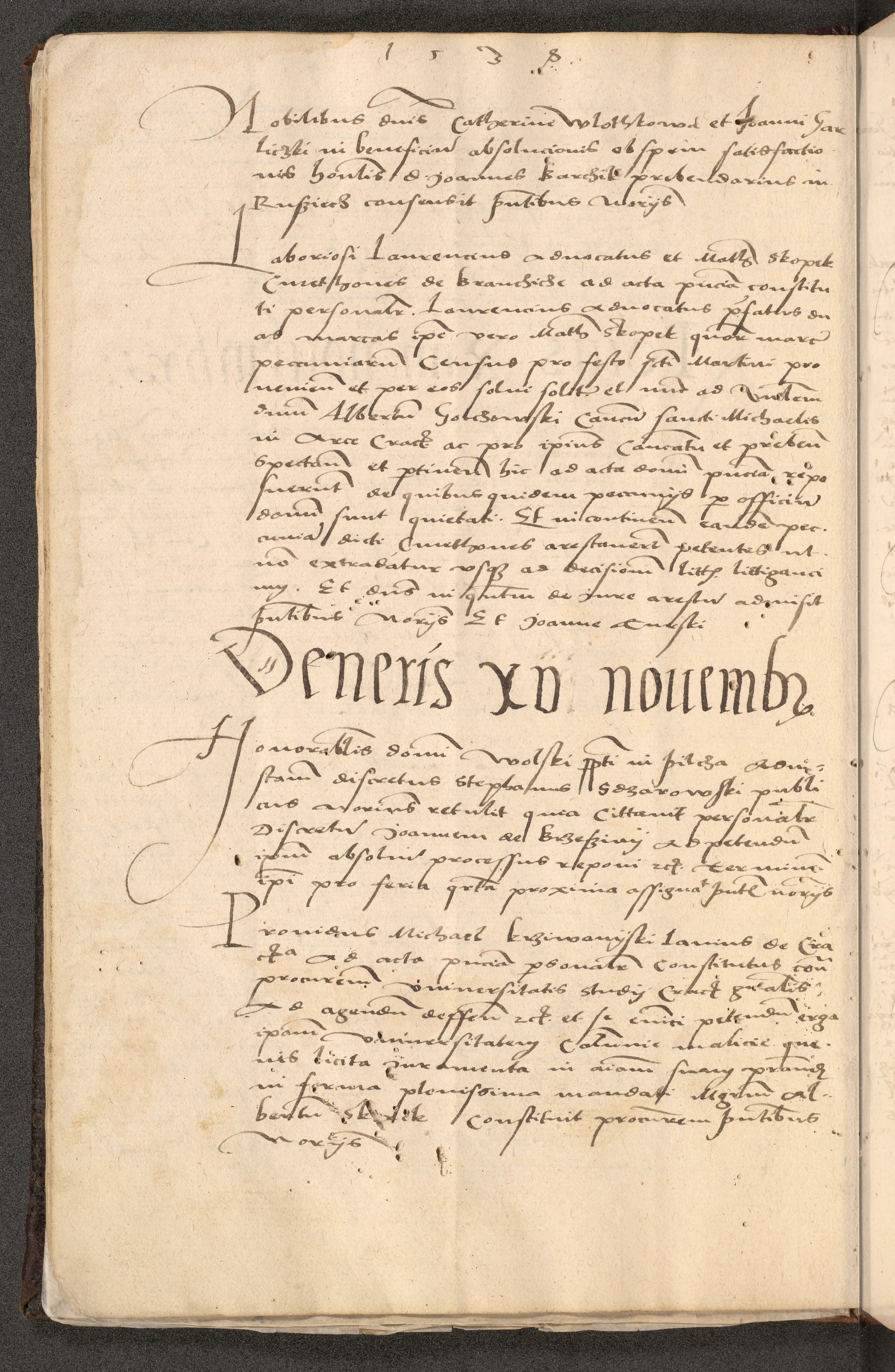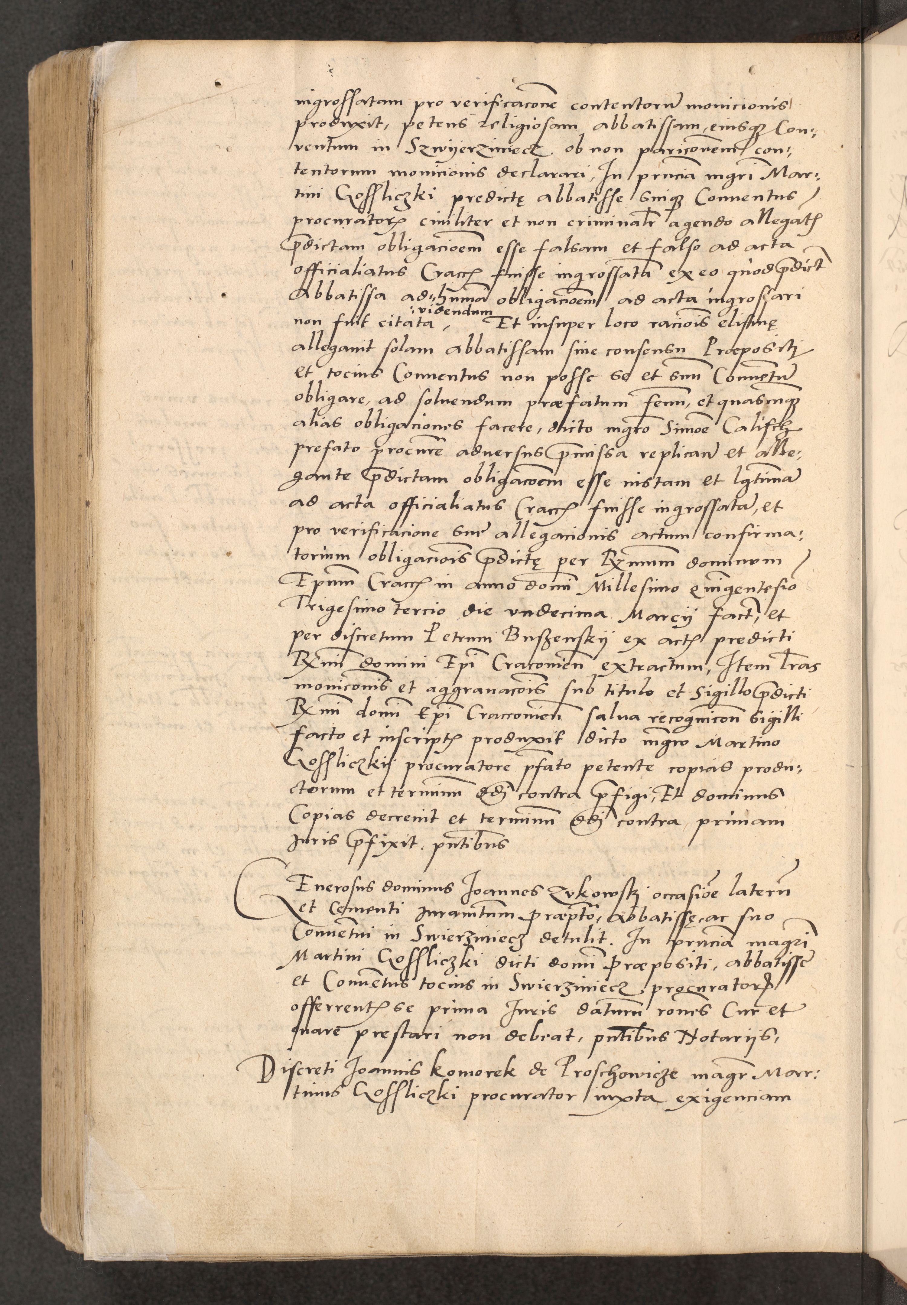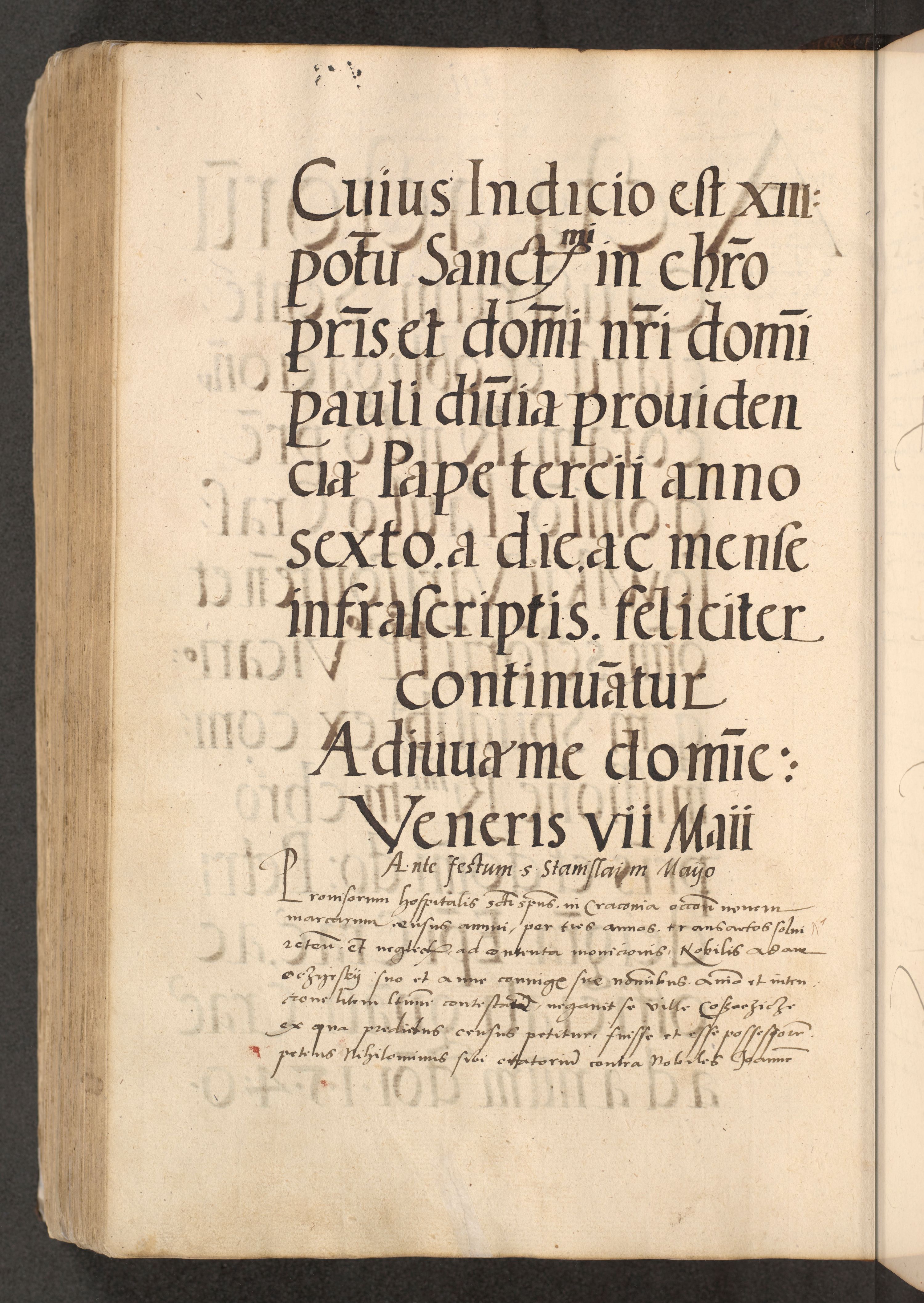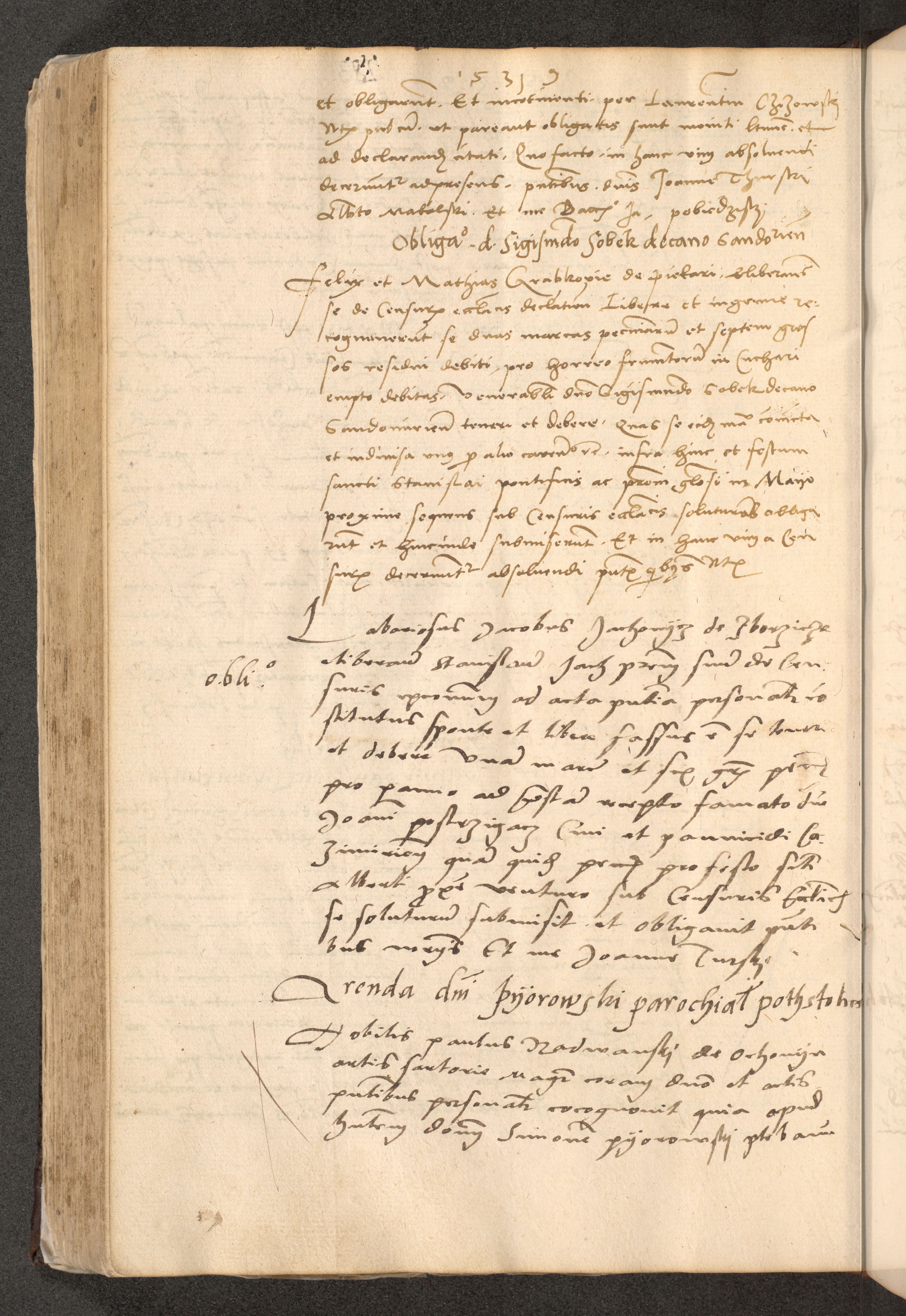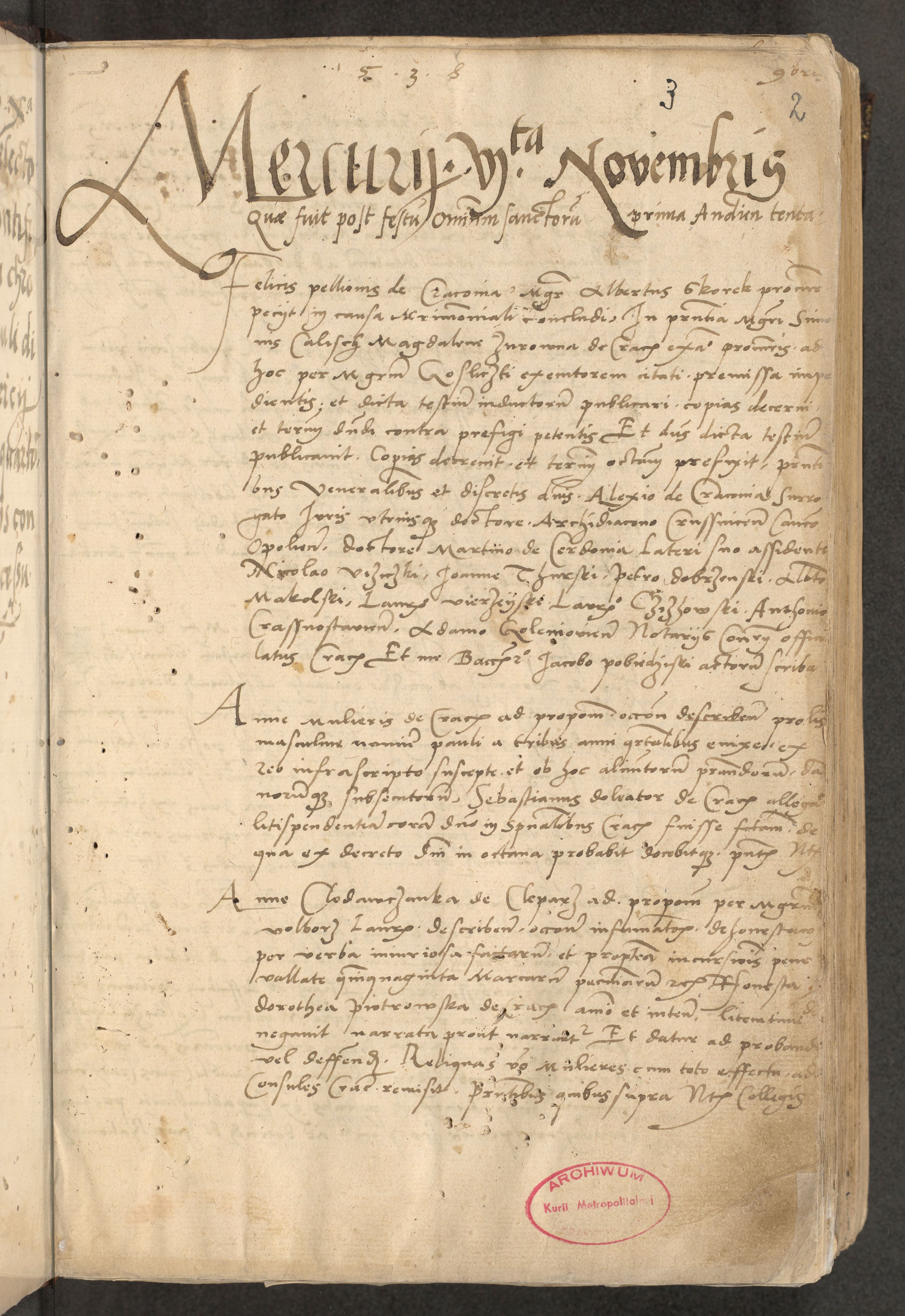 Acta actorum causarum, sentenciarum et obligationum coram reverendo patre domino Thoma Roznowski canonico et reverendissimi in Christo patris et domini domini Patri Dei gratia Cracoviensis. Sabbato, 26 Octobris in ecclesiam suam solenniter recepti officialis generalis Cracoviensis dinita administratura, qua fungebatur post mortem reverendissimi olim felicis recordationis domini Joannis Choiecki episcopi Cracoviensis et Regni Polonie cancelarii anno presenti currenti videlicet 1538, die 11 Marcii Piotrcovie in comiciis celebratis circiter 23 horam defuncti sepulto corpore nona eiusdemque obsequiis X respective Aprilis peractis electo sub indictione XI, pontificatu vero sanctissimi in Christo patris et domini nostri domini Pauli divina providencia pape tercii foeliciter moderni, anno quarto, incepta felicibus auspiciis continuantur ordine processu infrascripto