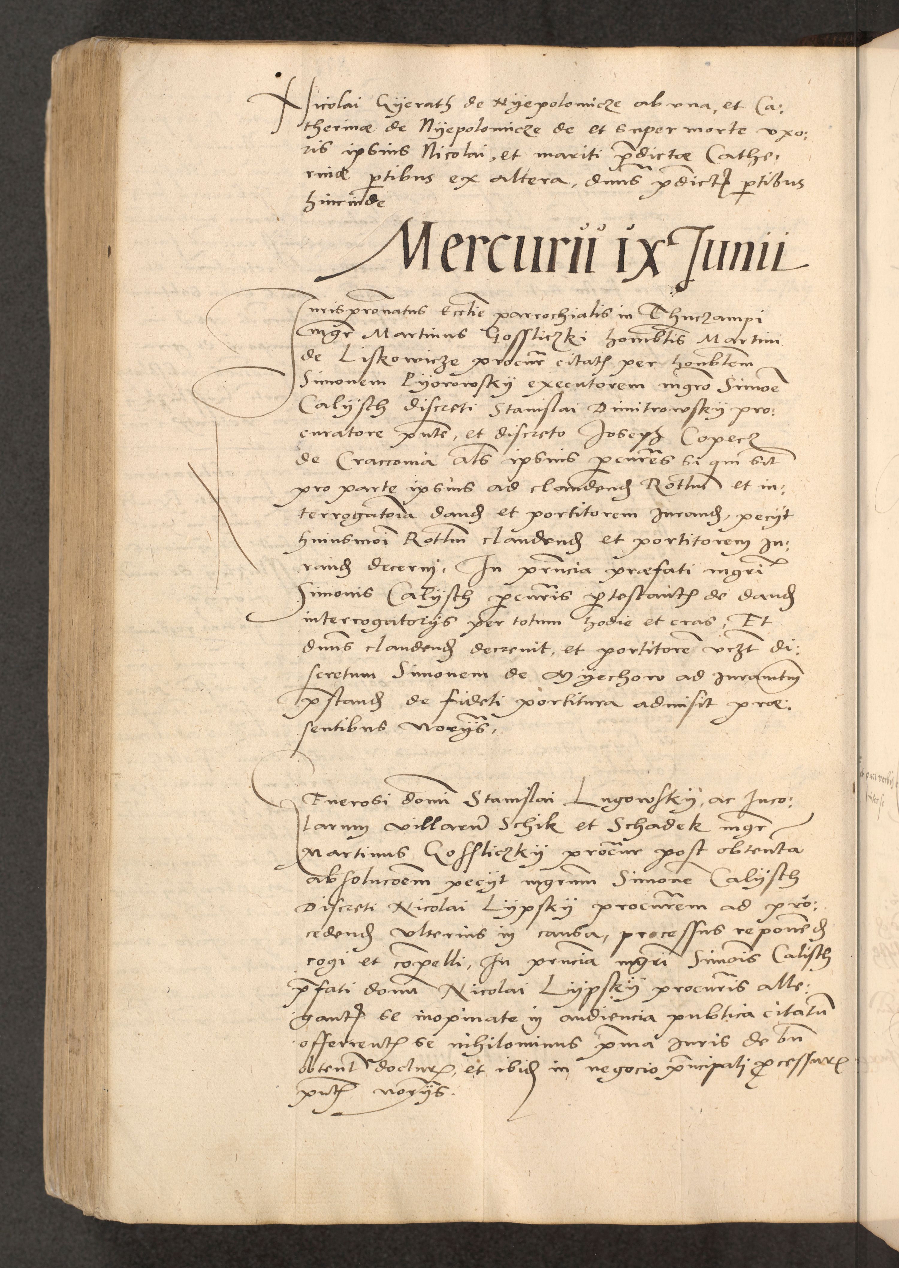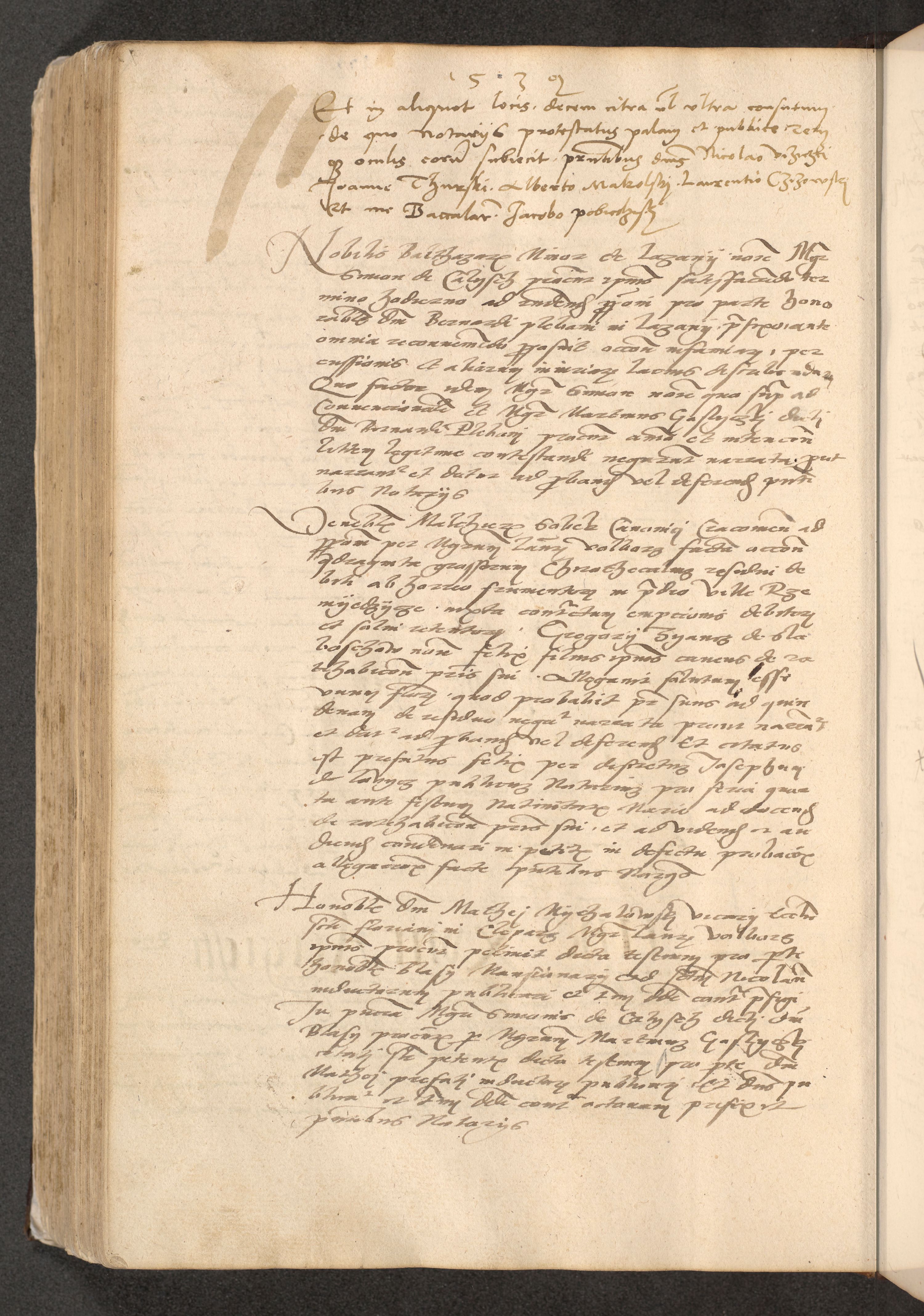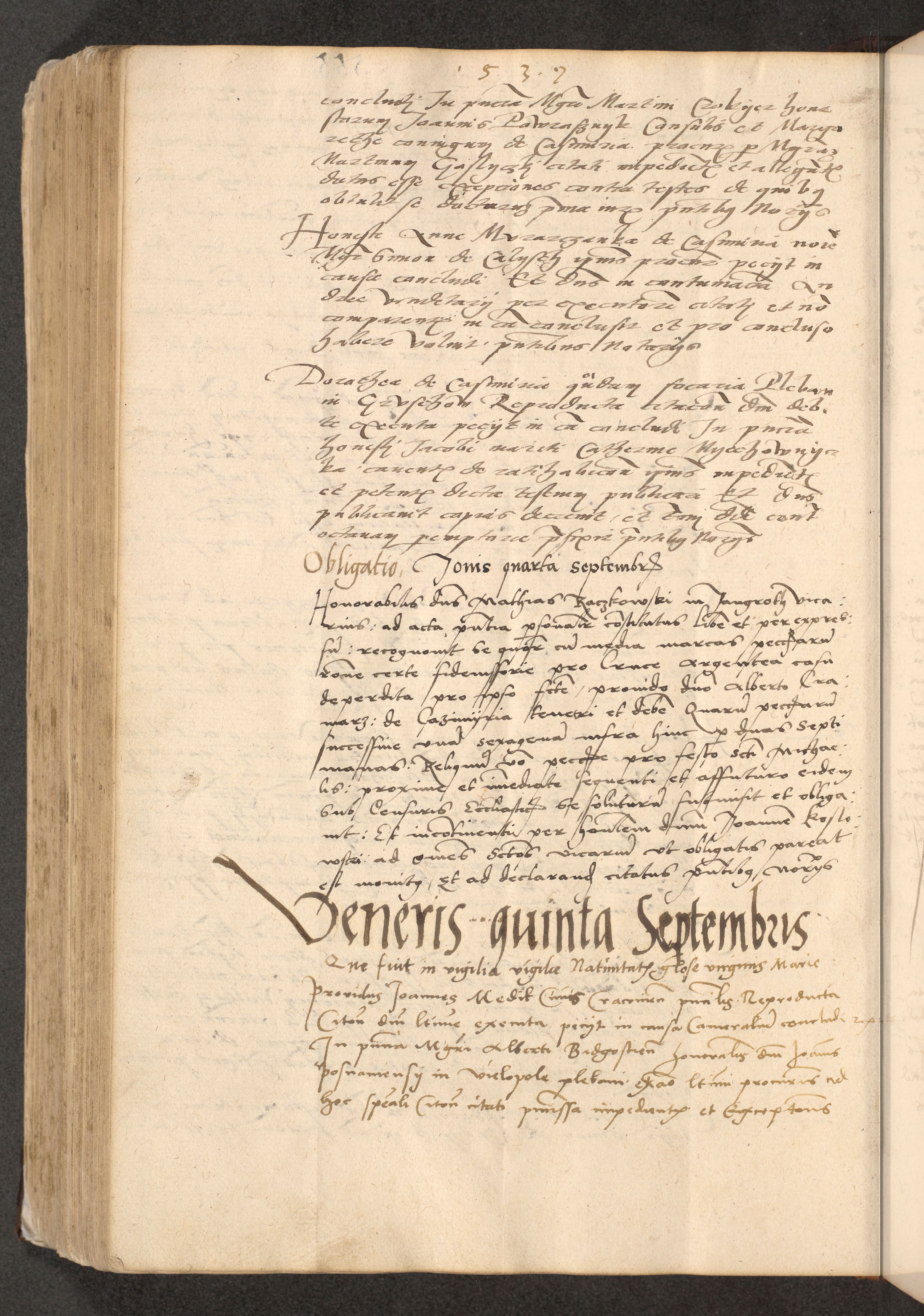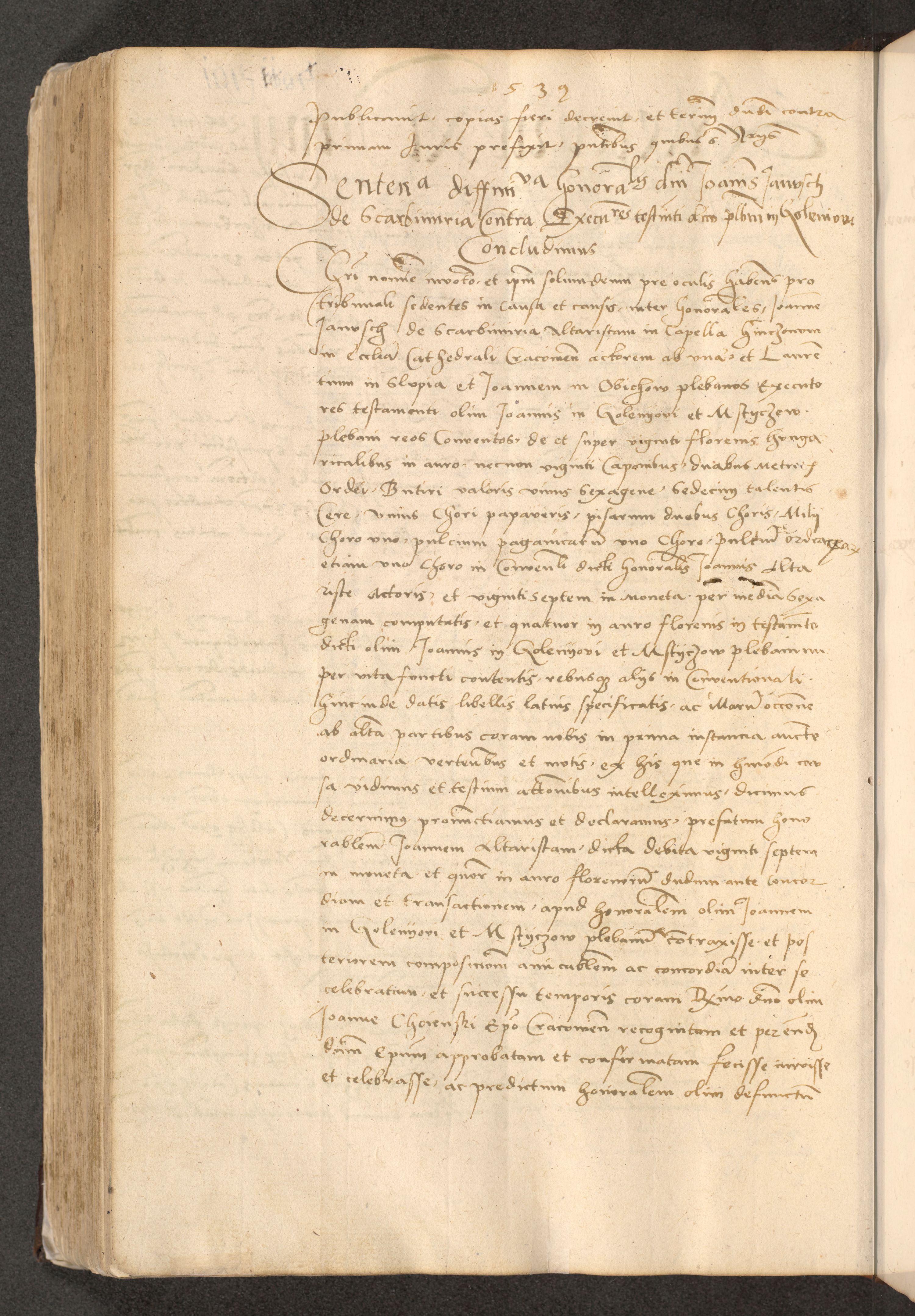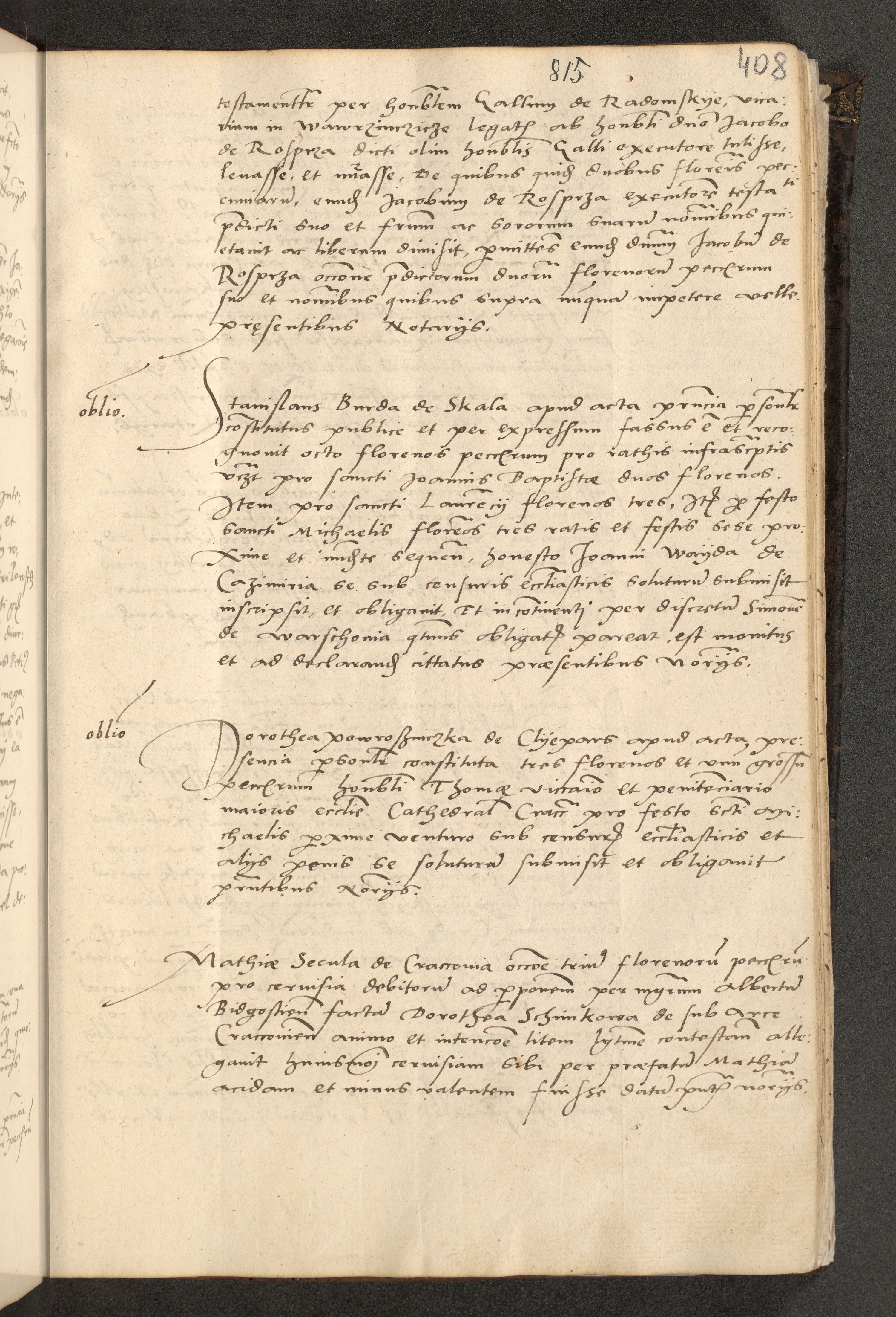 Acta actorum causarum, sentenciarum et obligationum coram reverendo patre domino Thoma Roznowski canonico et reverendissimi in Christo patris et domini domini Patri Dei gratia Cracoviensis. Sabbato, 26 Octobris in ecclesiam suam solenniter recepti officialis generalis Cracoviensis dinita administratura, qua fungebatur post mortem reverendissimi olim felicis recordationis domini Joannis Choiecki episcopi Cracoviensis et Regni Polonie cancelarii anno presenti currenti videlicet 1538, die 11 Marcii Piotrcovie in comiciis celebratis circiter 23 horam defuncti sepulto corpore nona eiusdemque obsequiis X respective Aprilis peractis electo sub indictione XI, pontificatu vero sanctissimi in Christo patris et domini nostri domini Pauli divina providencia pape tercii foeliciter moderni, anno quarto, incepta felicibus auspiciis continuantur ordine processu infrascripto