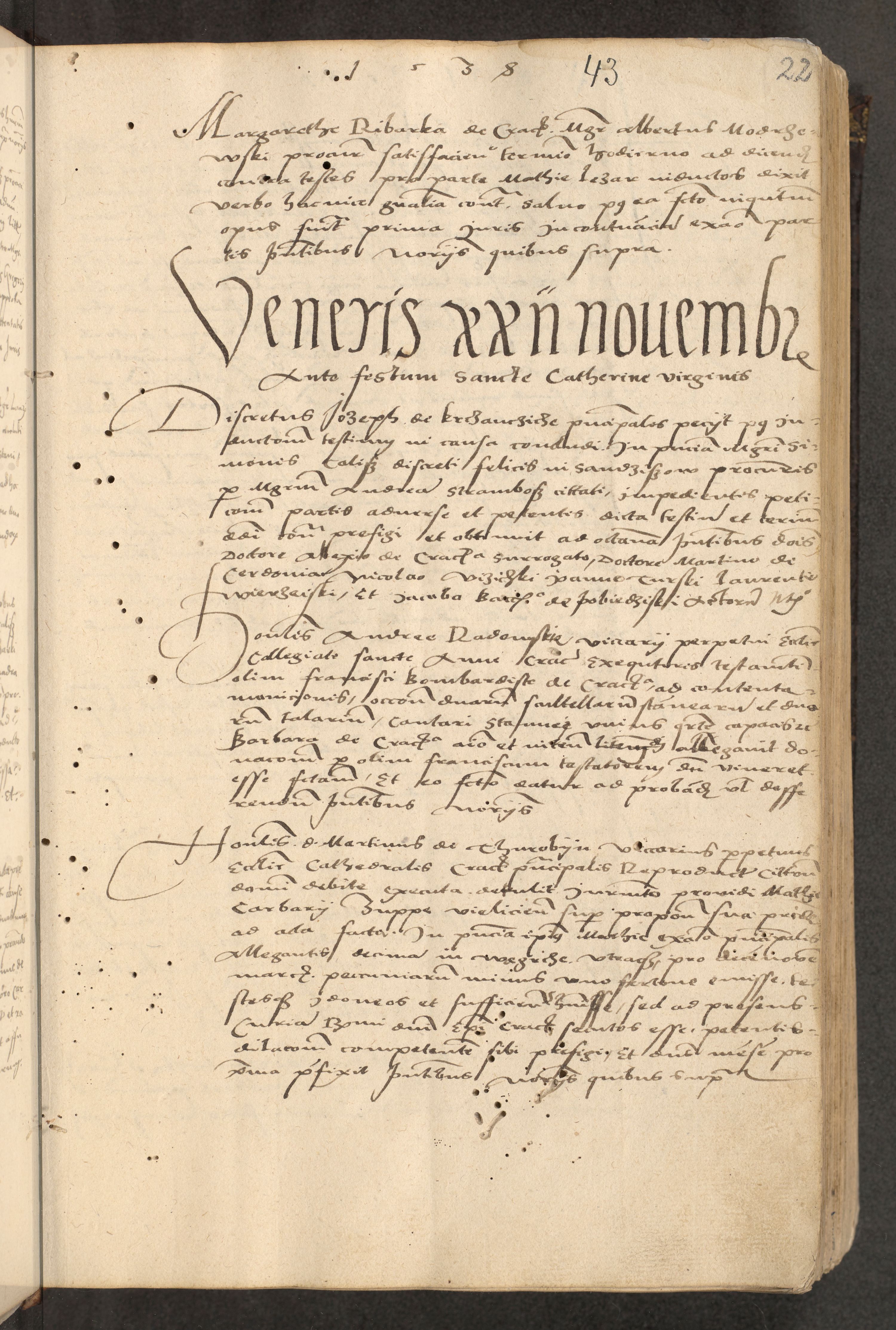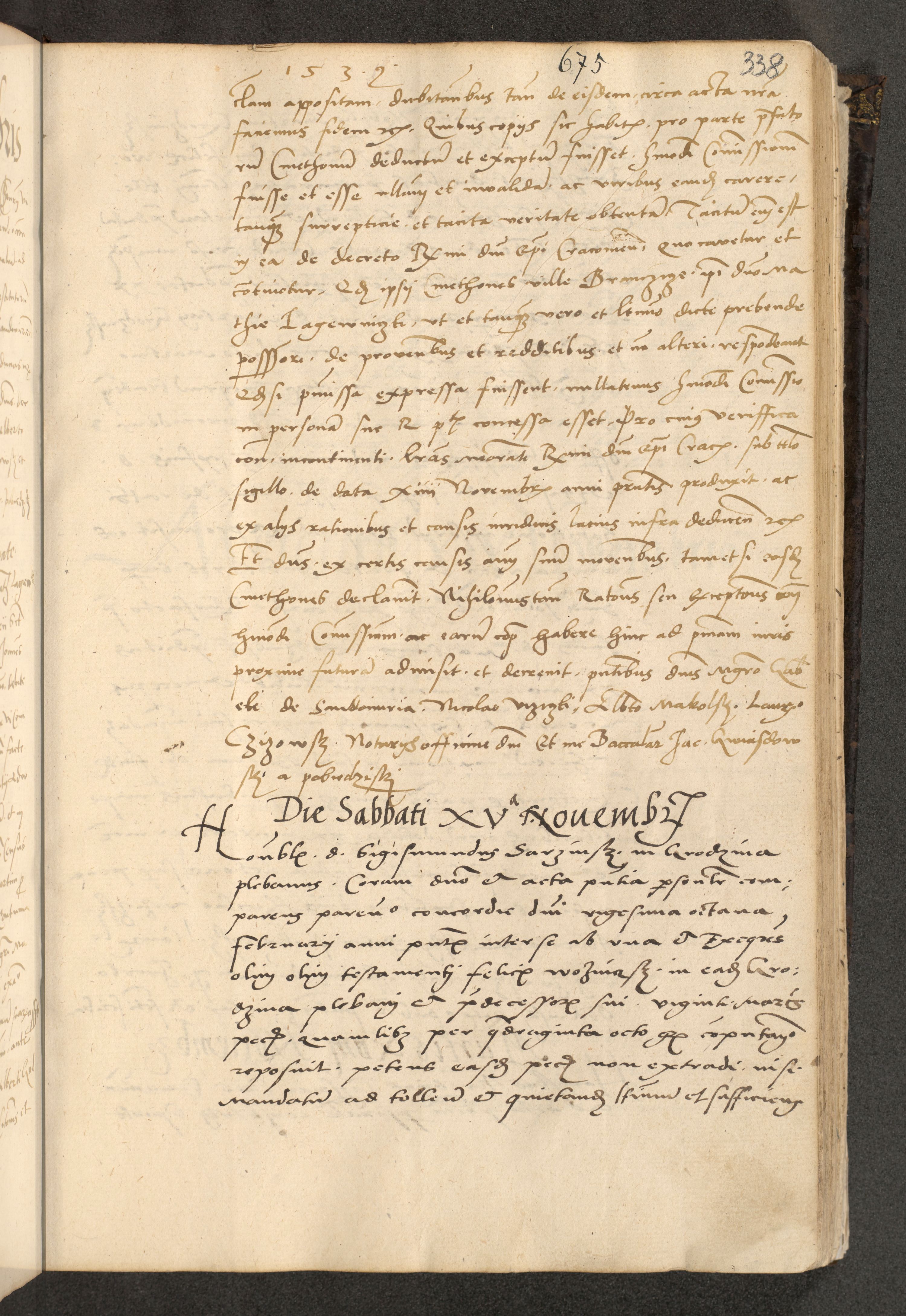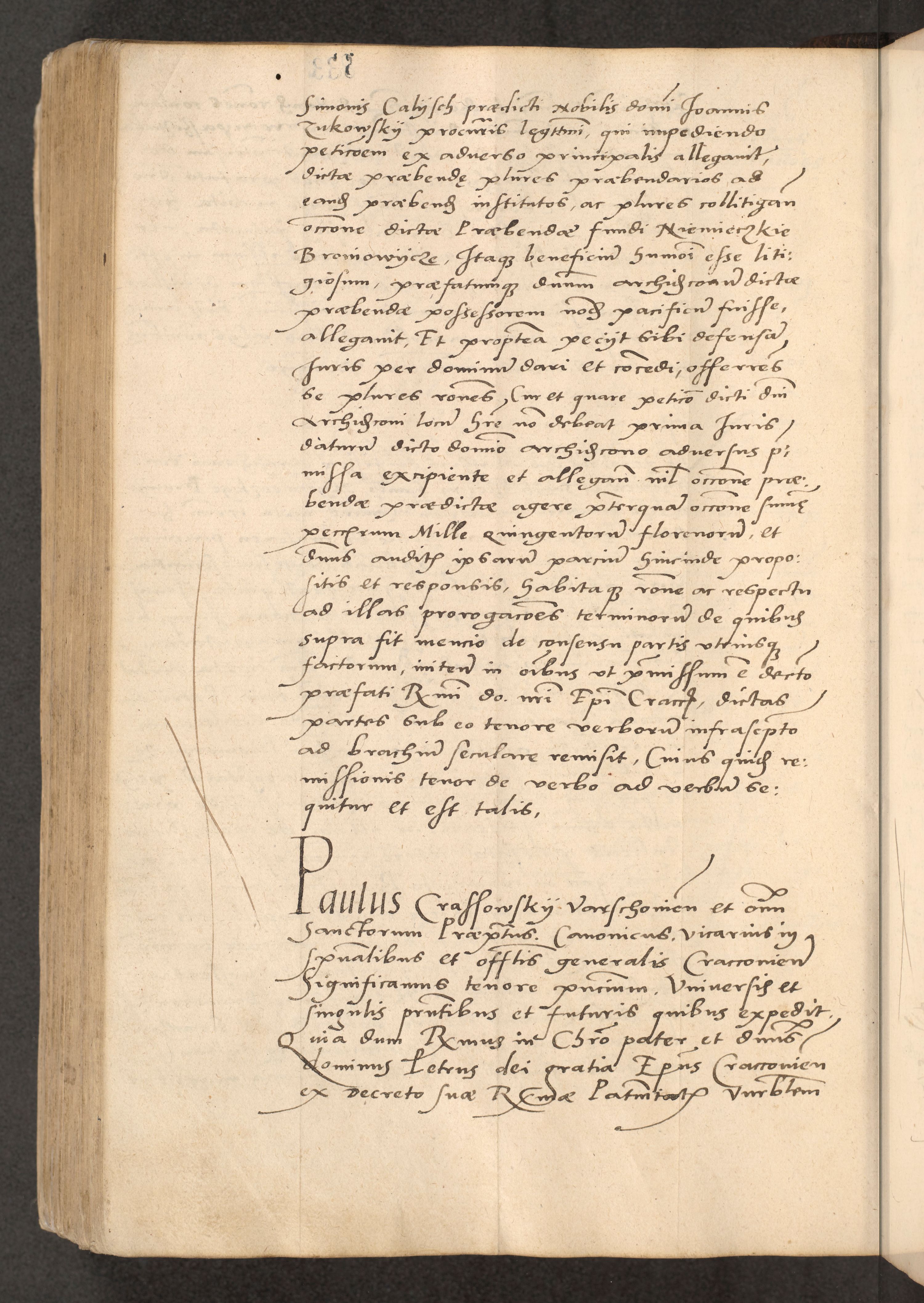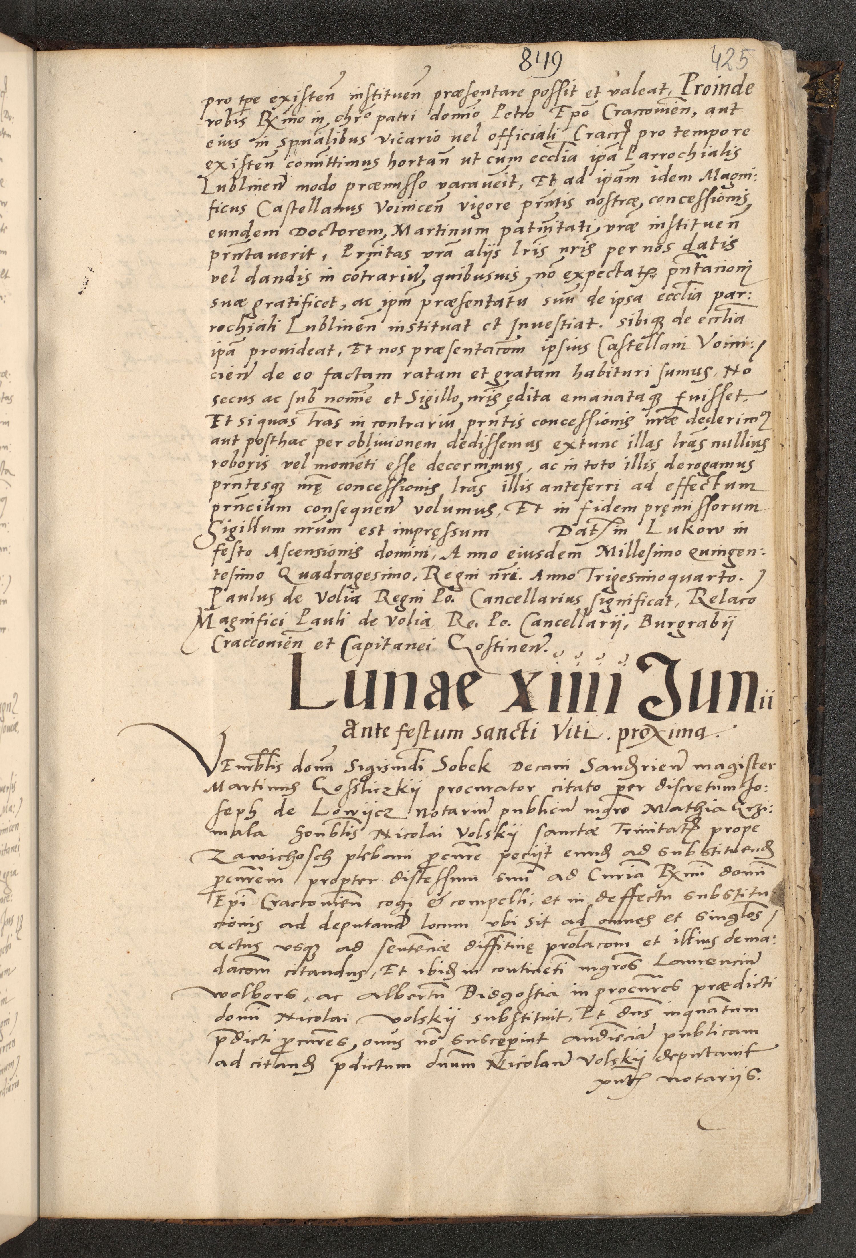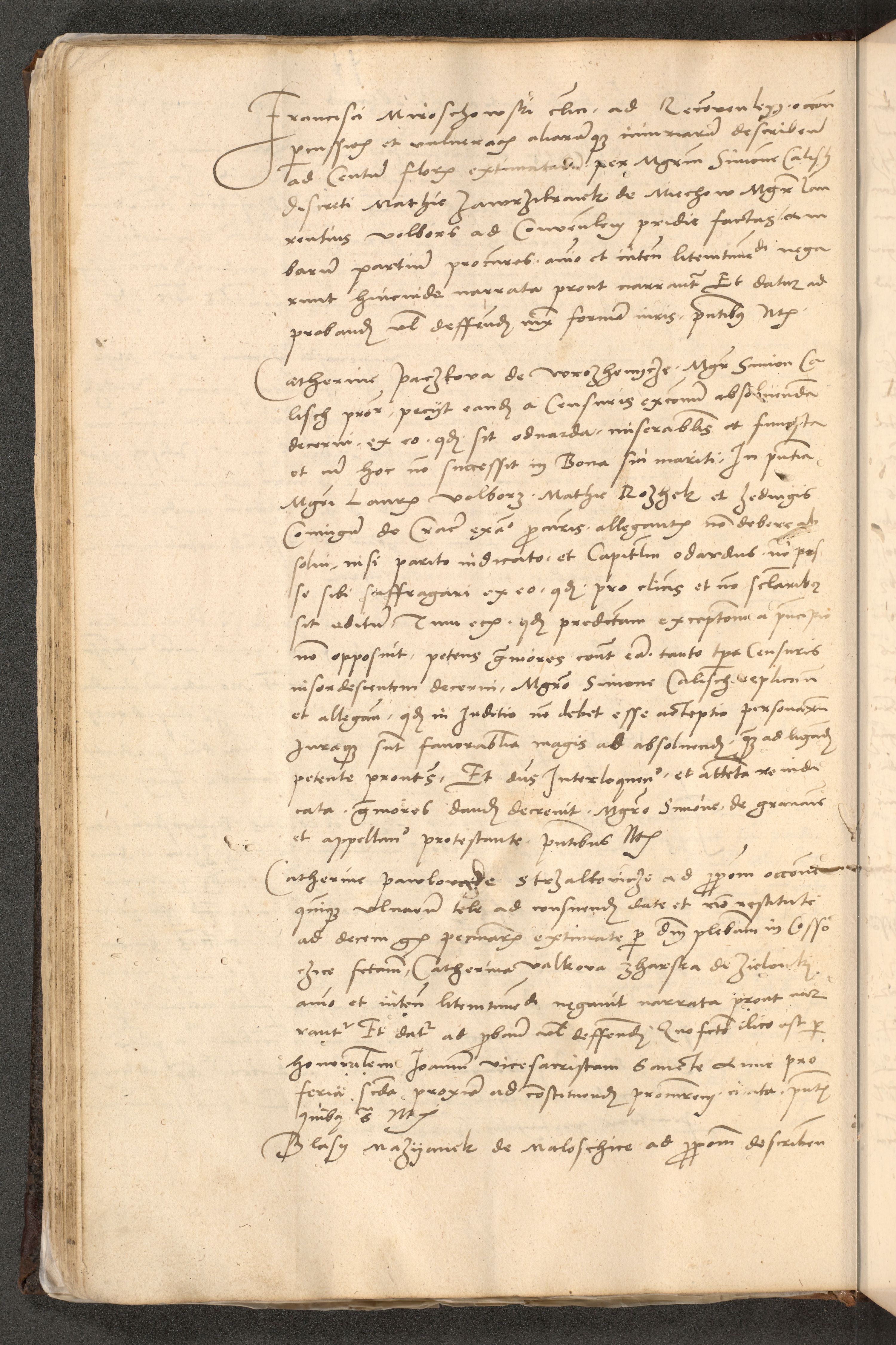 Acta actorum causarum, sentenciarum et obligationum coram reverendo patre domino Thoma Roznowski canonico et reverendissimi in Christo patris et domini domini Patri Dei gratia Cracoviensis. Sabbato, 26 Octobris in ecclesiam suam solenniter recepti officialis generalis Cracoviensis dinita administratura, qua fungebatur post mortem reverendissimi olim felicis recordationis domini Joannis Choiecki episcopi Cracoviensis et Regni Polonie cancelarii anno presenti currenti videlicet 1538, die 11 Marcii Piotrcovie in comiciis celebratis circiter 23 horam defuncti sepulto corpore nona eiusdemque obsequiis X respective Aprilis peractis electo sub indictione XI, pontificatu vero sanctissimi in Christo patris et domini nostri domini Pauli divina providencia pape tercii foeliciter moderni, anno quarto, incepta felicibus auspiciis continuantur ordine processu infrascripto