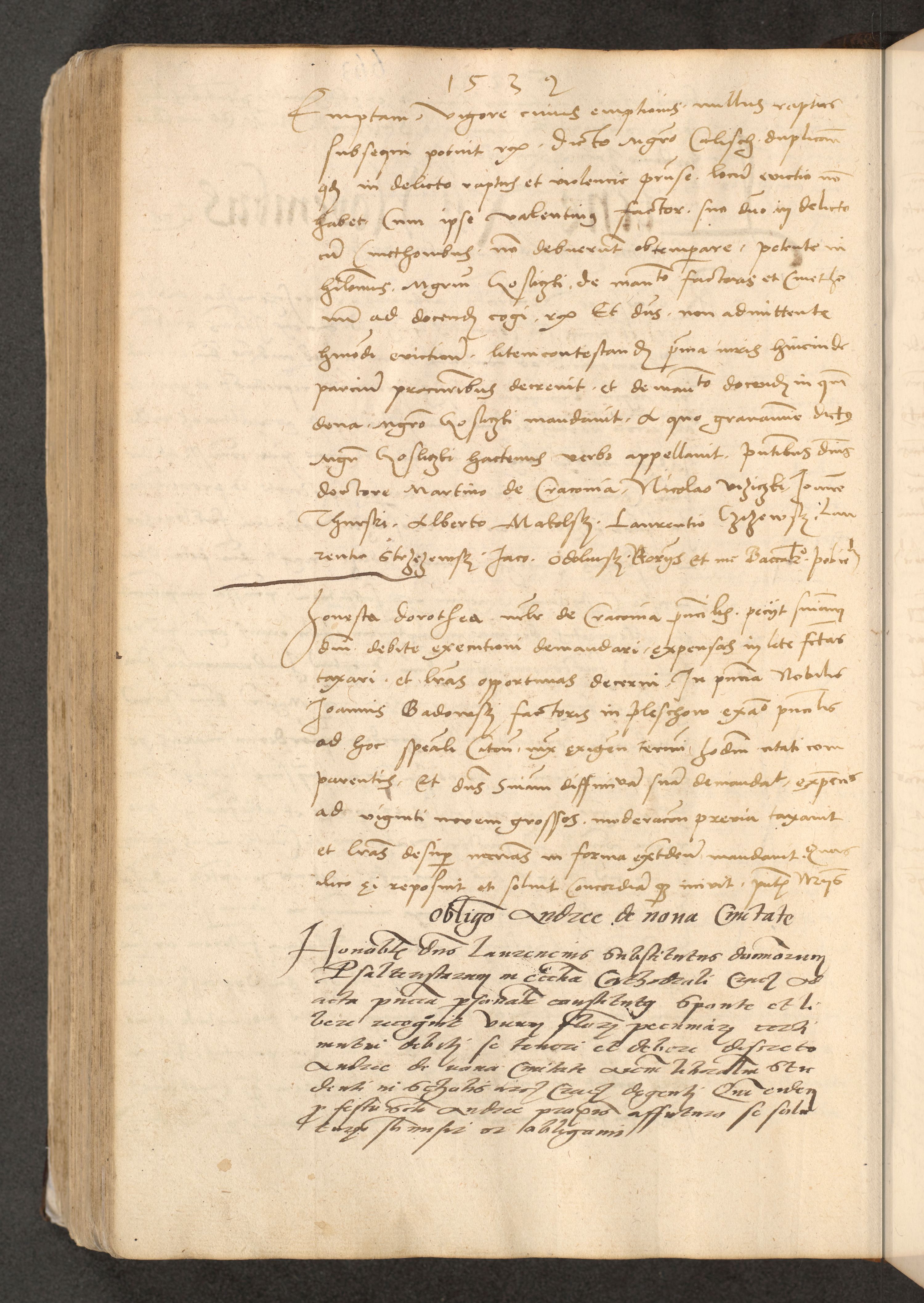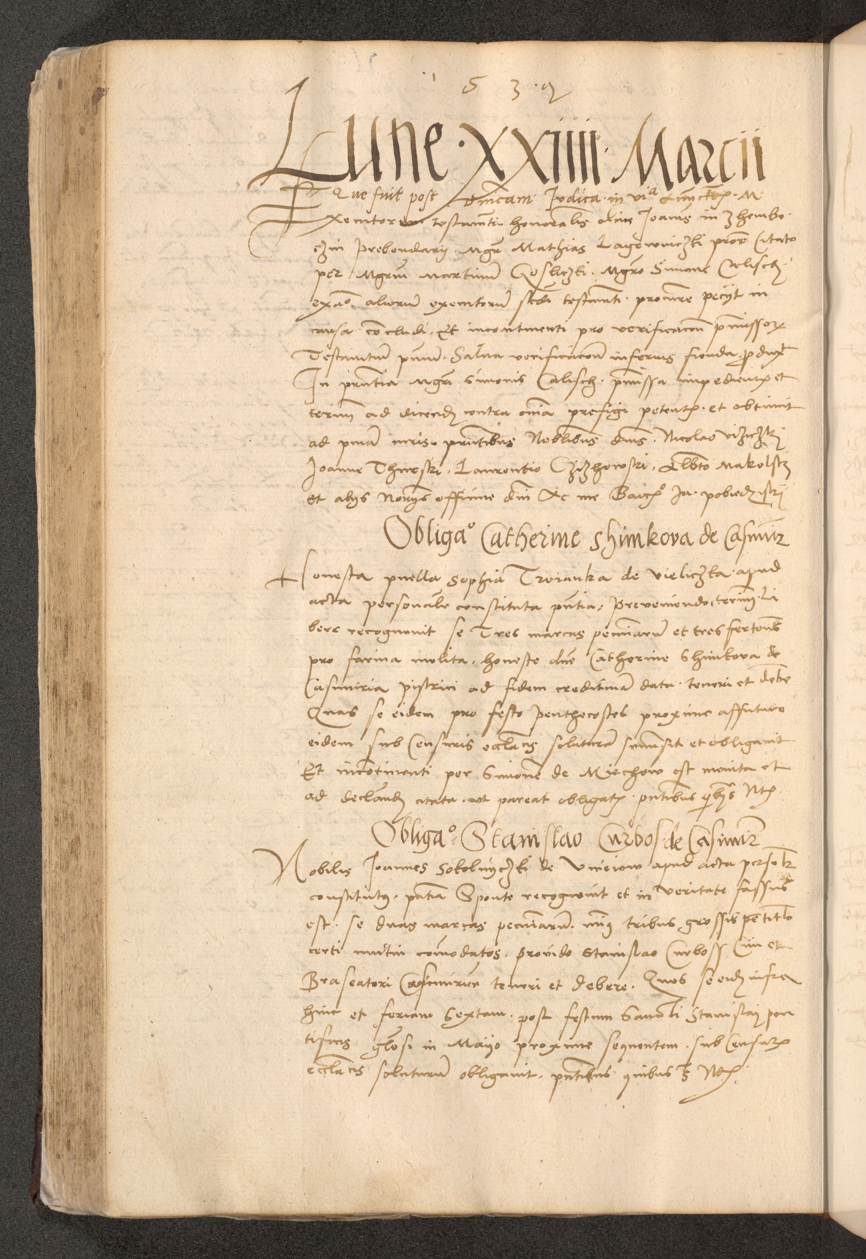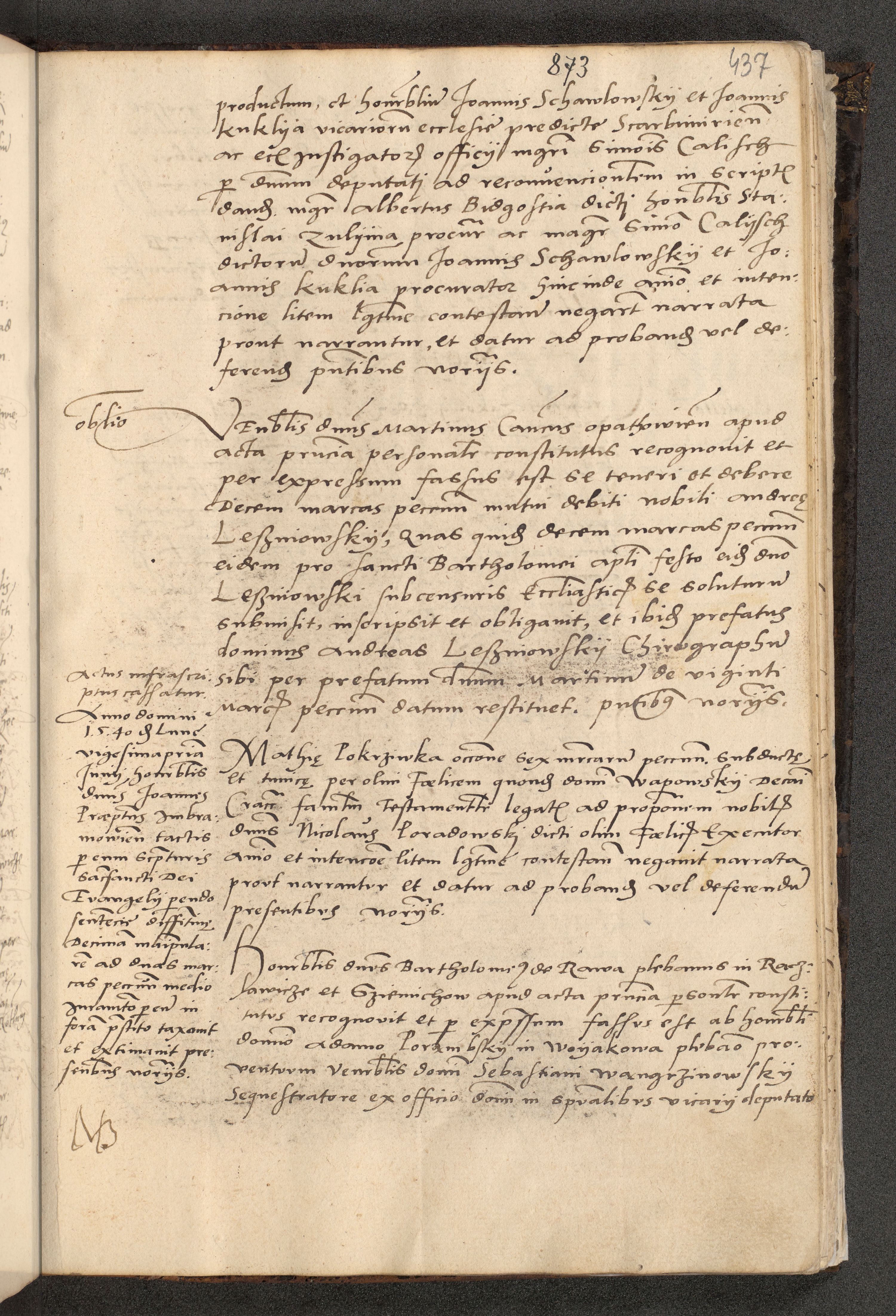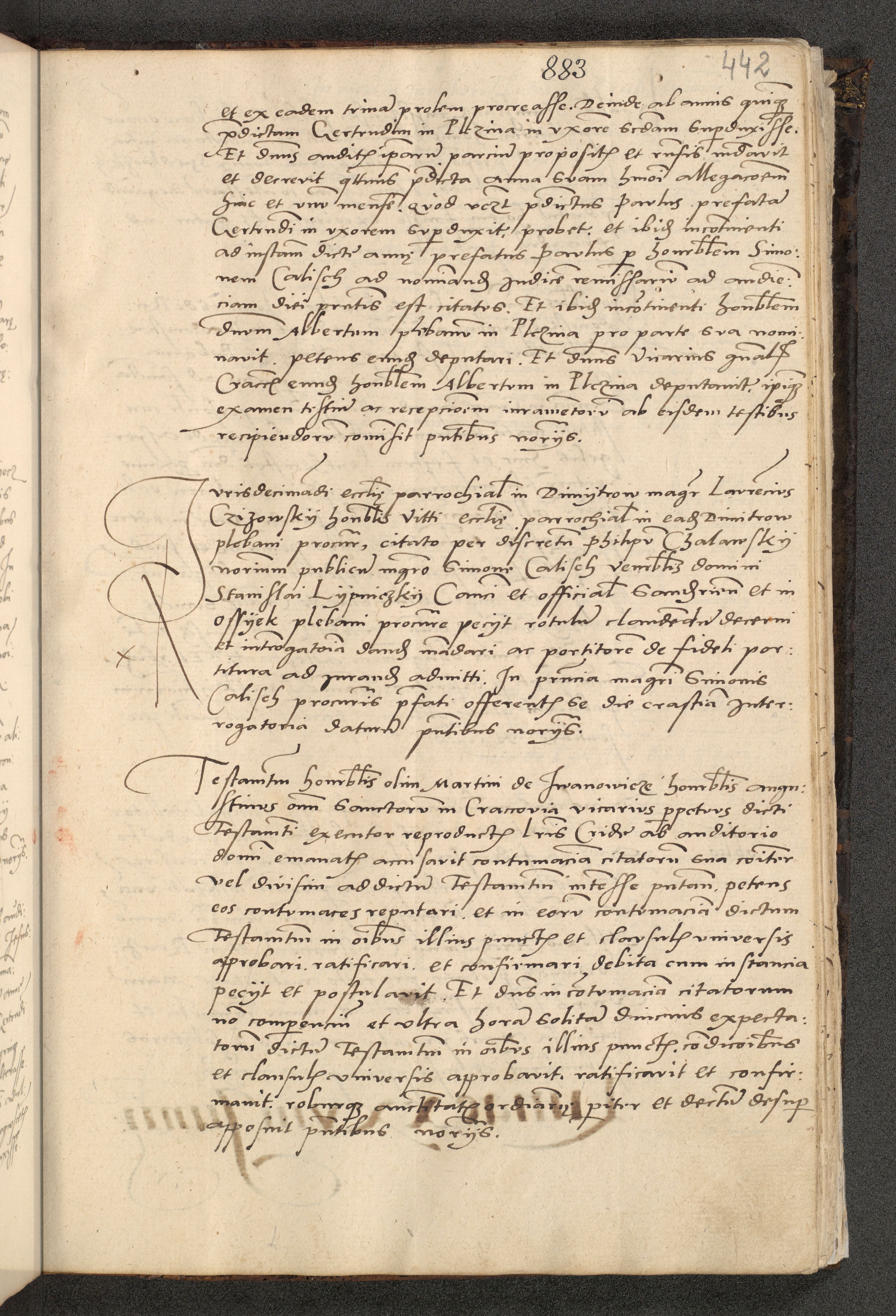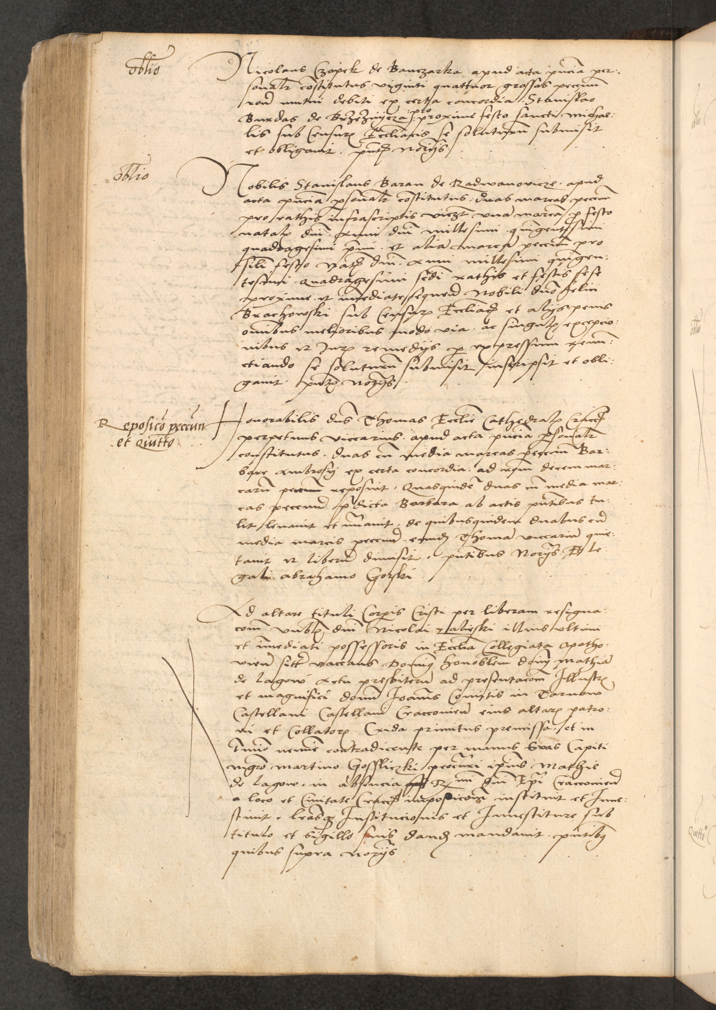Acta actorum causarum, sentenciarum et obligationum coram reverendo patre domino Thoma Roznowski canonico et reverendissimi in Christo patris et domini domini Patri Dei gratia Cracoviensis. Sabbato, 26 Octobris in ecclesiam suam solenniter recepti officialis generalis Cracoviensis dinita administratura, qua fungebatur post mortem reverendissimi olim felicis recordationis domini Joannis Choiecki episcopi Cracoviensis et Regni Polonie cancelarii anno presenti currenti videlicet 1538, die 11 Marcii Piotrcovie in comiciis celebratis circiter 23 horam defuncti sepulto corpore nona eiusdemque obsequiis X respective Aprilis peractis electo sub indictione XI, pontificatu vero sanctissimi in Christo patris et domini nostri domini Pauli divina providencia pape tercii foeliciter moderni, anno quarto, incepta felicibus auspiciis continuantur ordine processu infrascripto