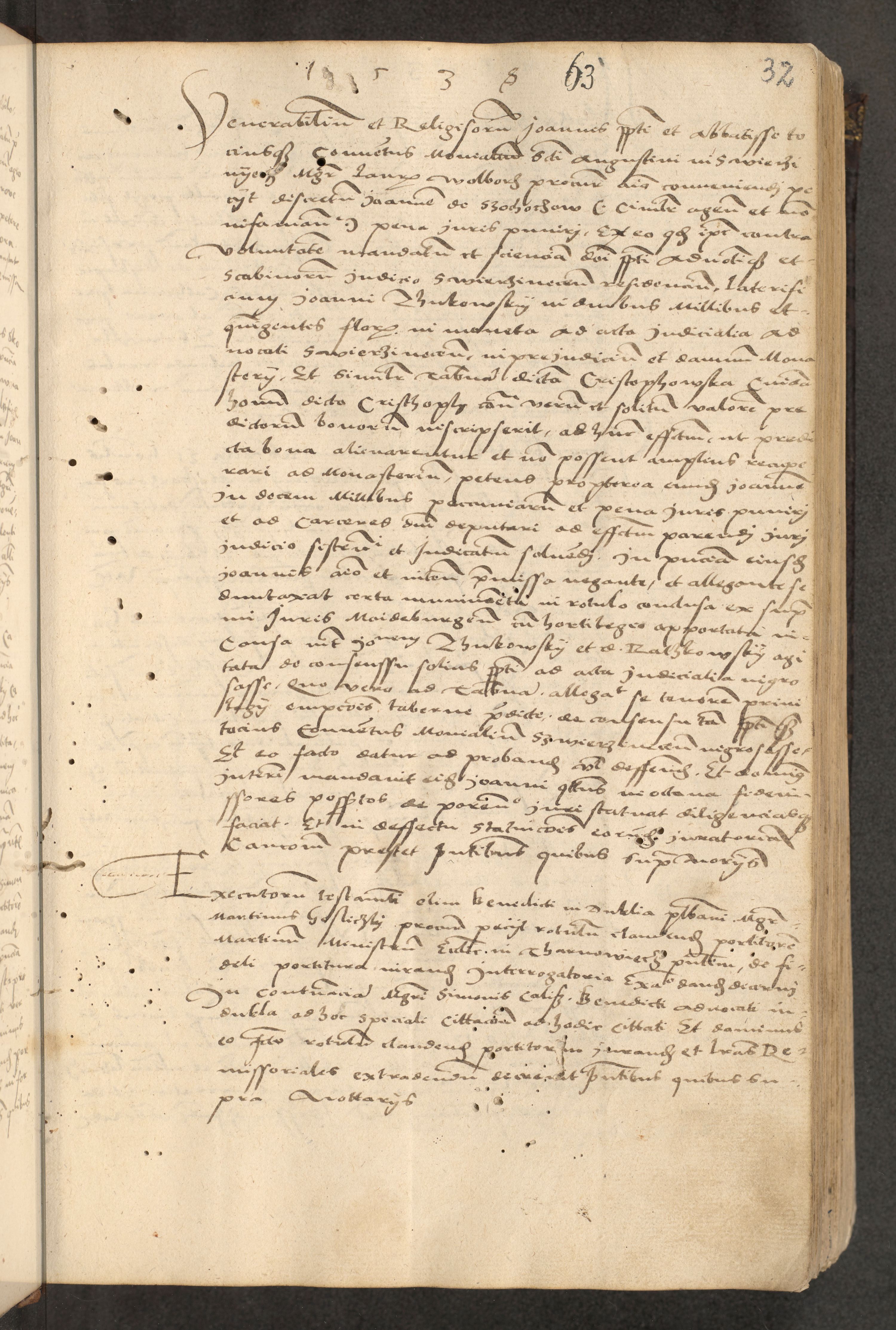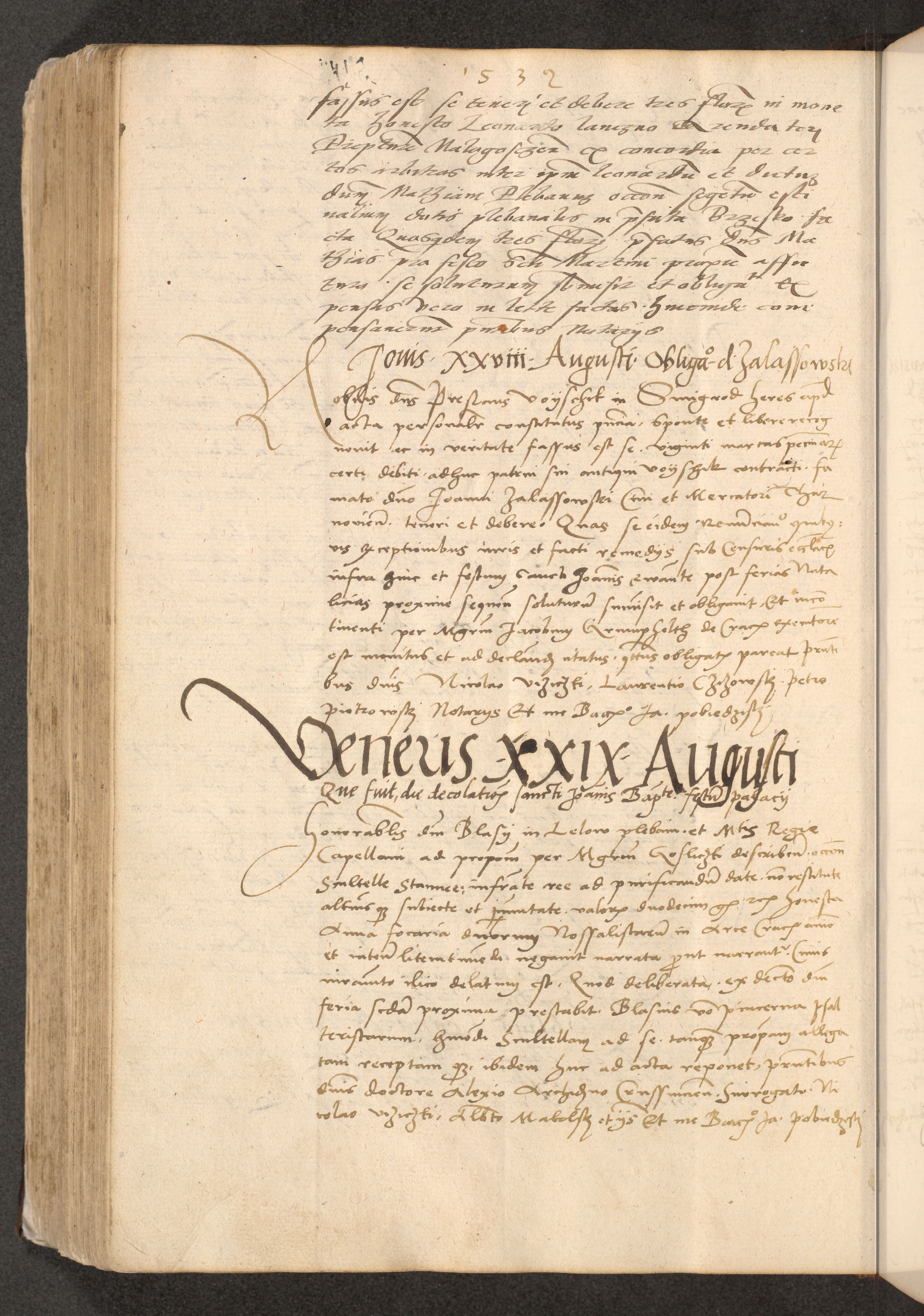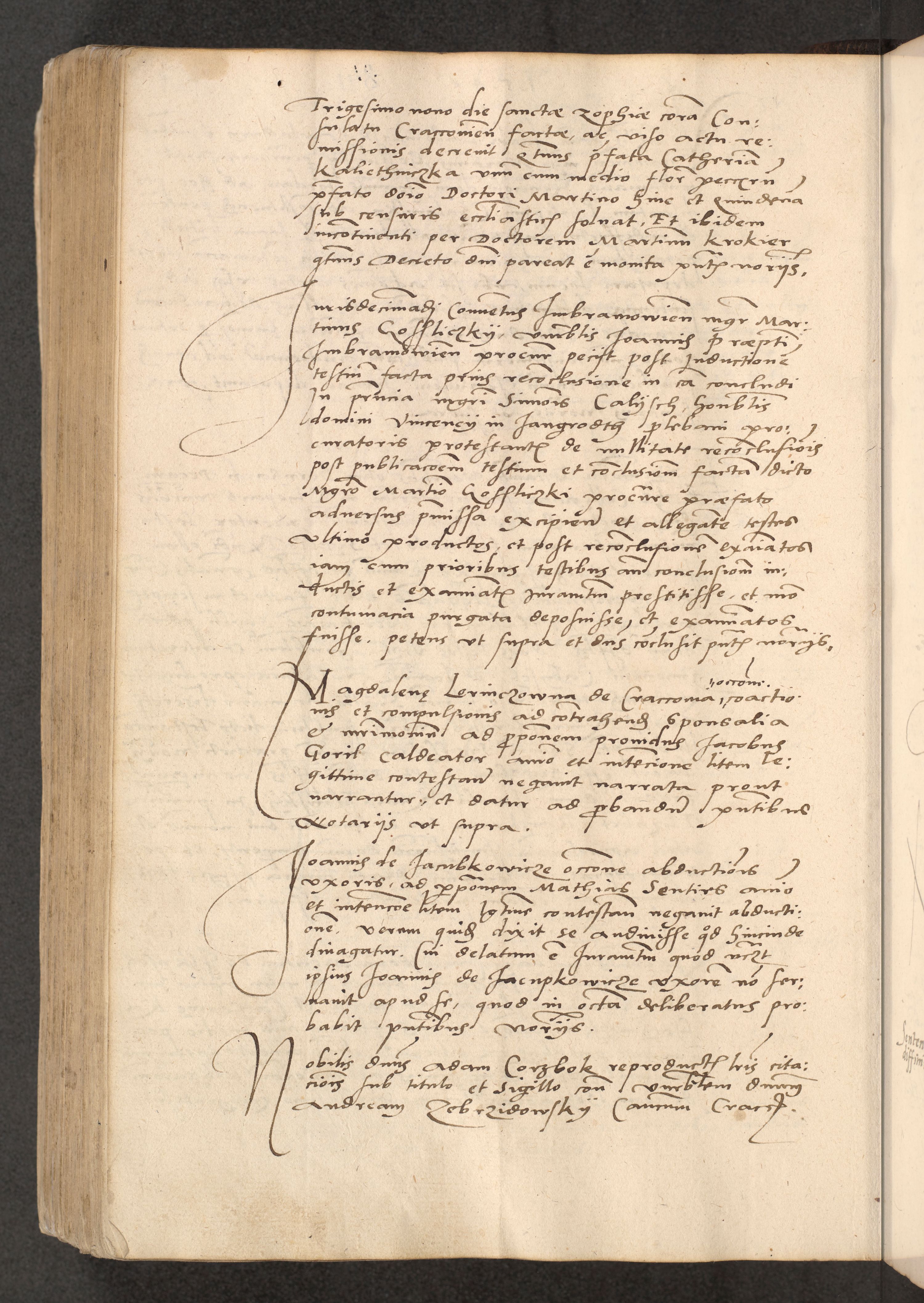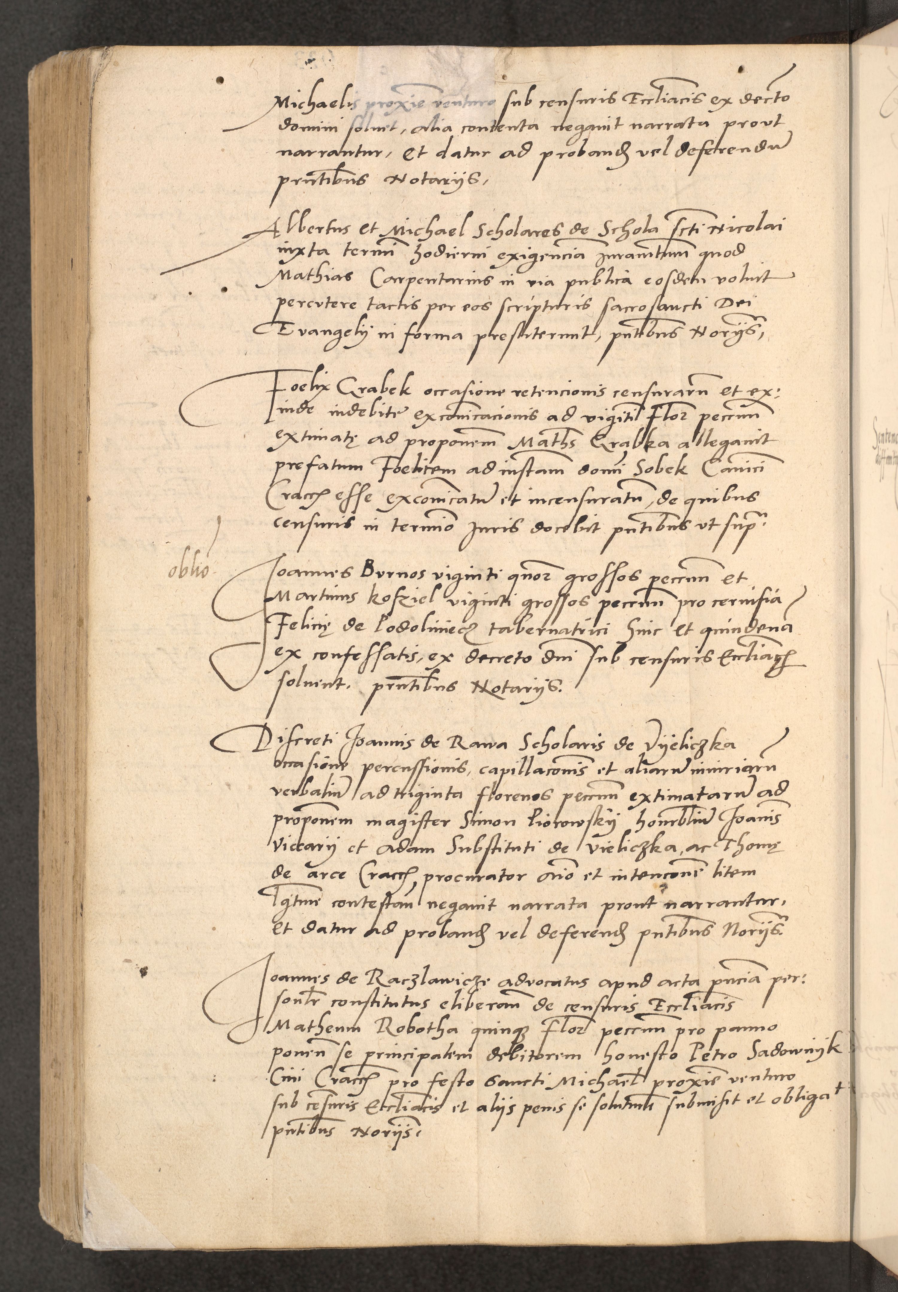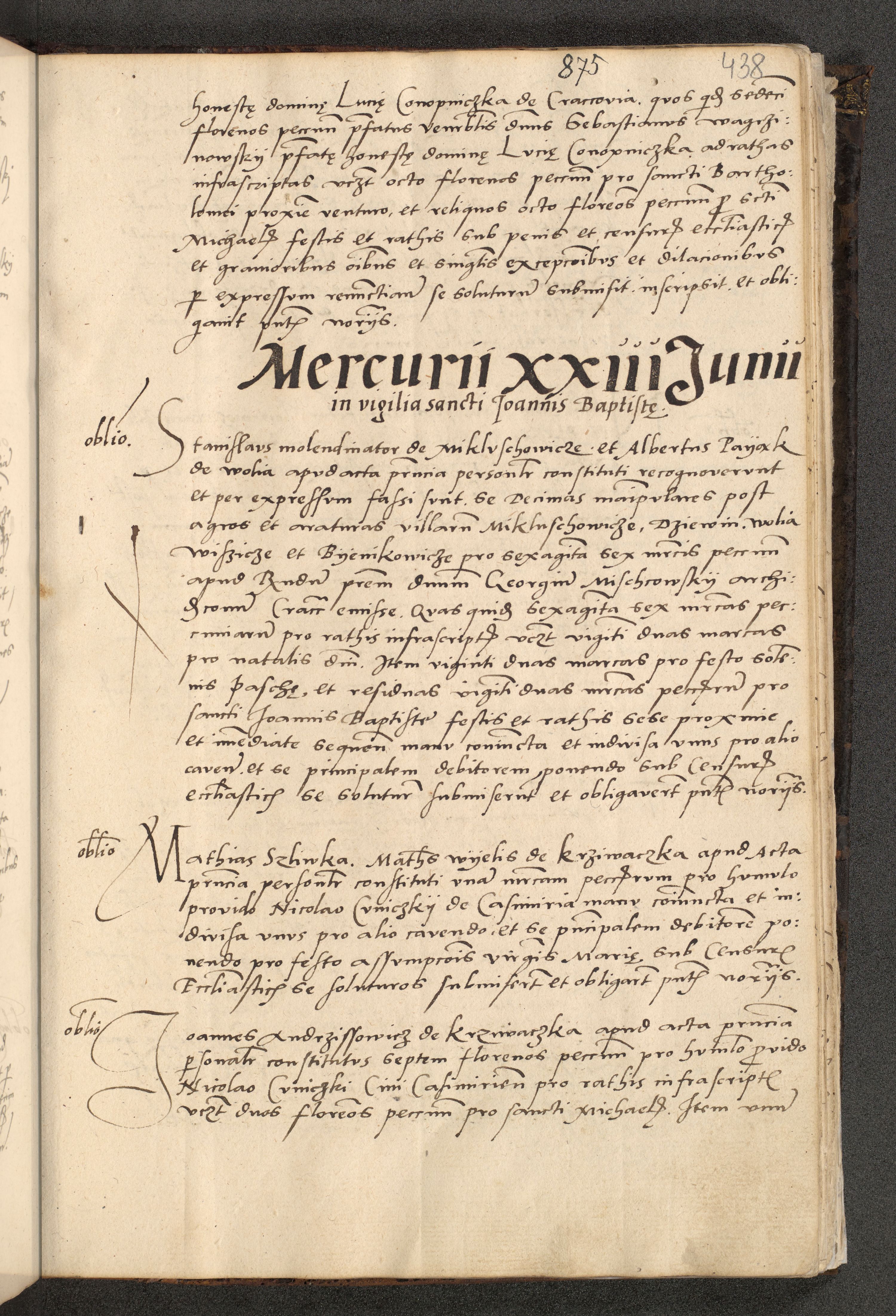 Acta actorum causarum, sentenciarum et obligationum coram reverendo patre domino Thoma Roznowski canonico et reverendissimi in Christo patris et domini domini Patri Dei gratia Cracoviensis. Sabbato, 26 Octobris in ecclesiam suam solenniter recepti officialis generalis Cracoviensis dinita administratura, qua fungebatur post mortem reverendissimi olim felicis recordationis domini Joannis Choiecki episcopi Cracoviensis et Regni Polonie cancelarii anno presenti currenti videlicet 1538, die 11 Marcii Piotrcovie in comiciis celebratis circiter 23 horam defuncti sepulto corpore nona eiusdemque obsequiis X respective Aprilis peractis electo sub indictione XI, pontificatu vero sanctissimi in Christo patris et domini nostri domini Pauli divina providencia pape tercii foeliciter moderni, anno quarto, incepta felicibus auspiciis continuantur ordine processu infrascripto
