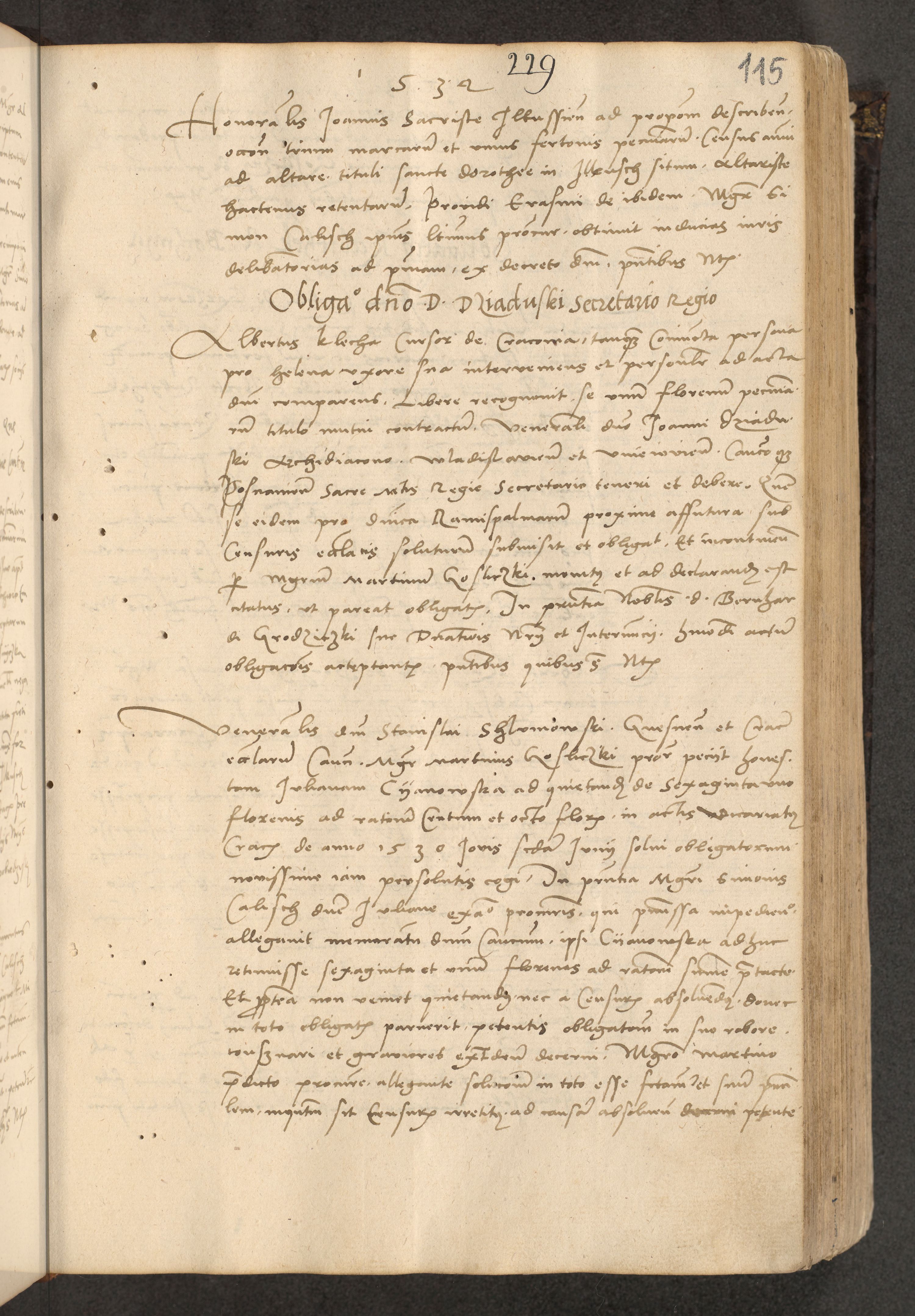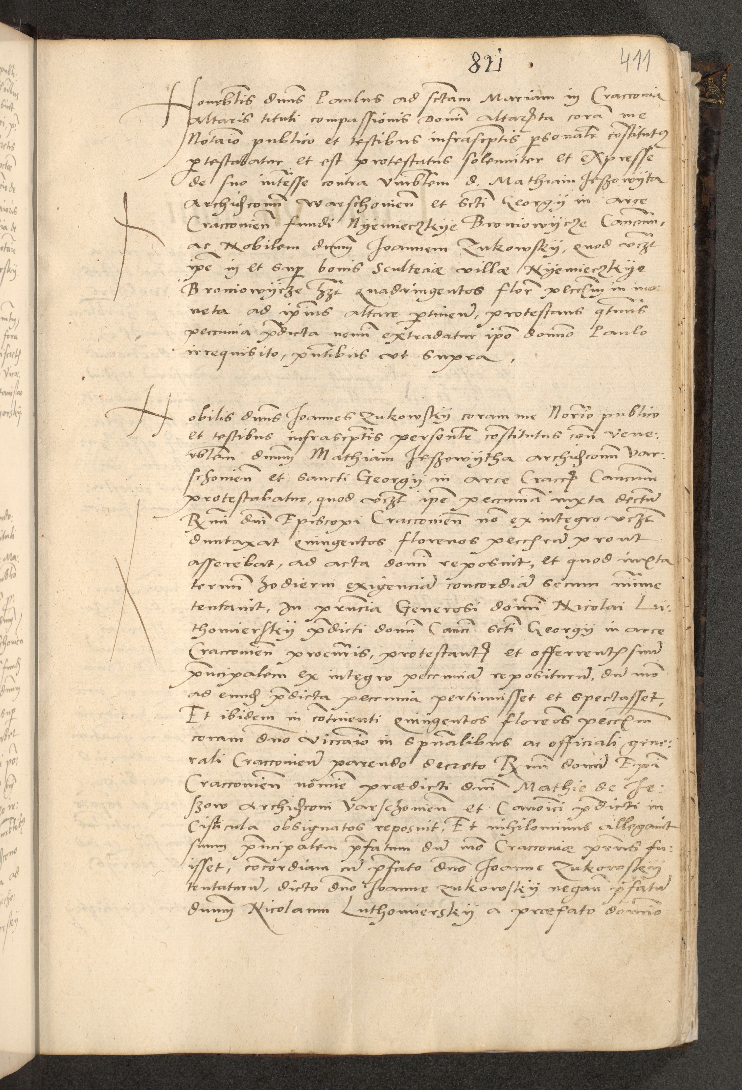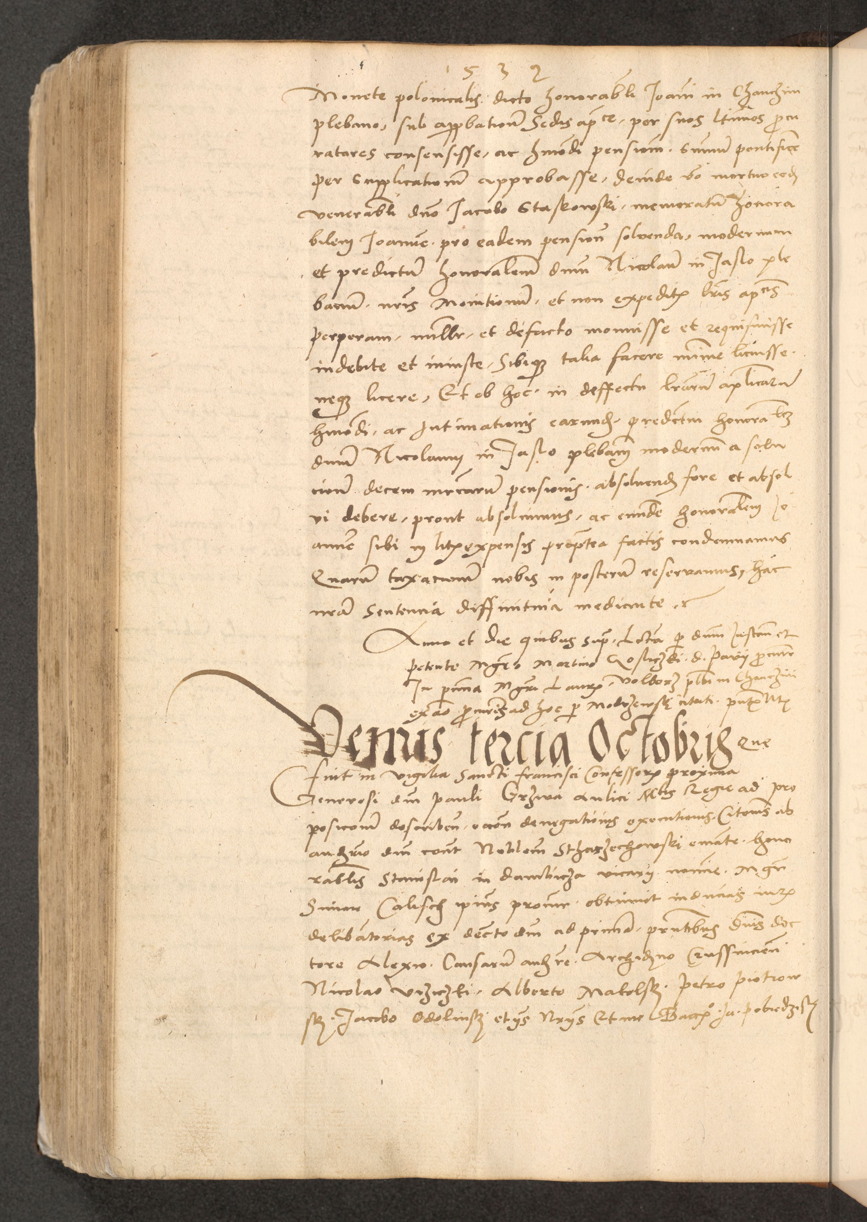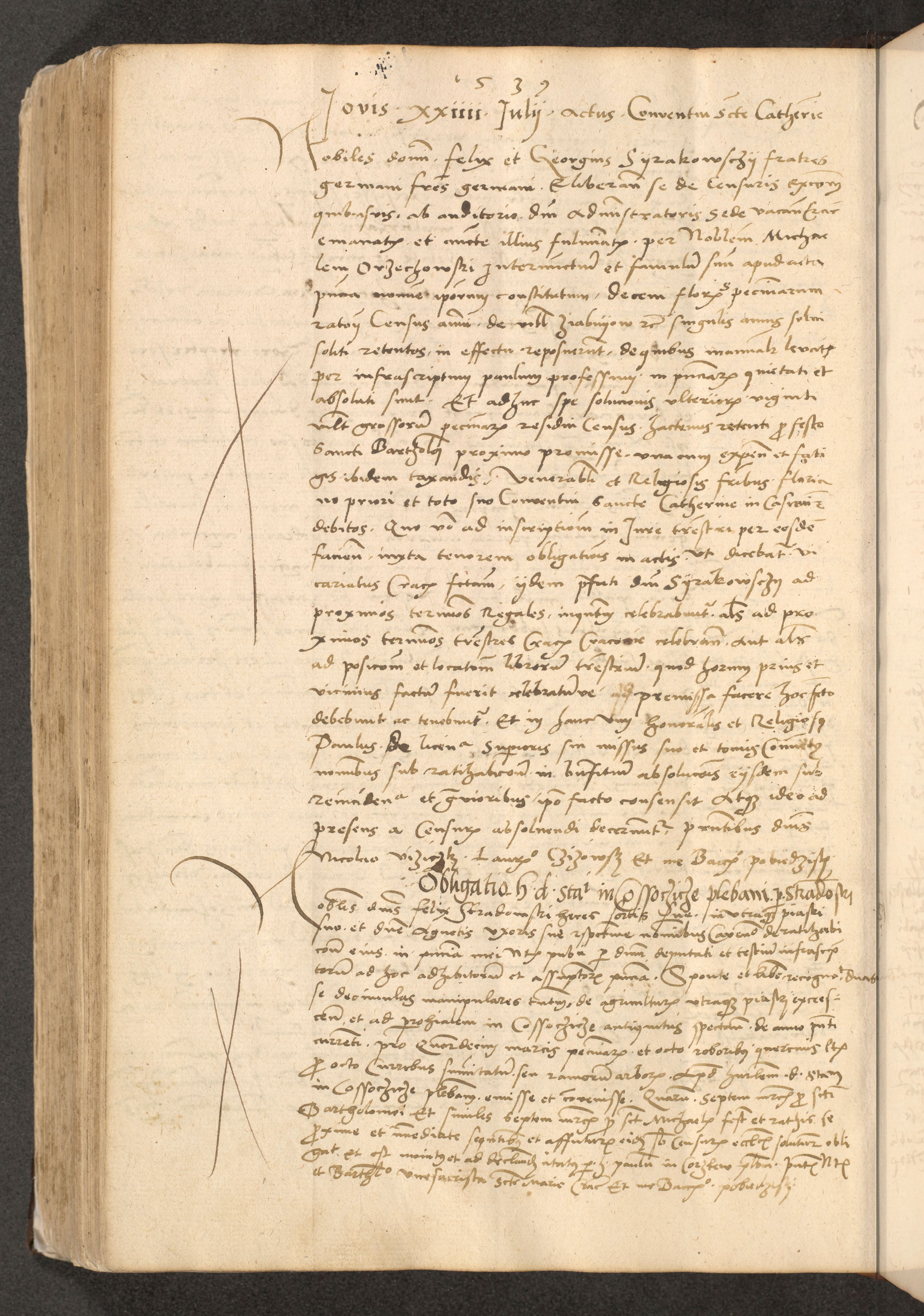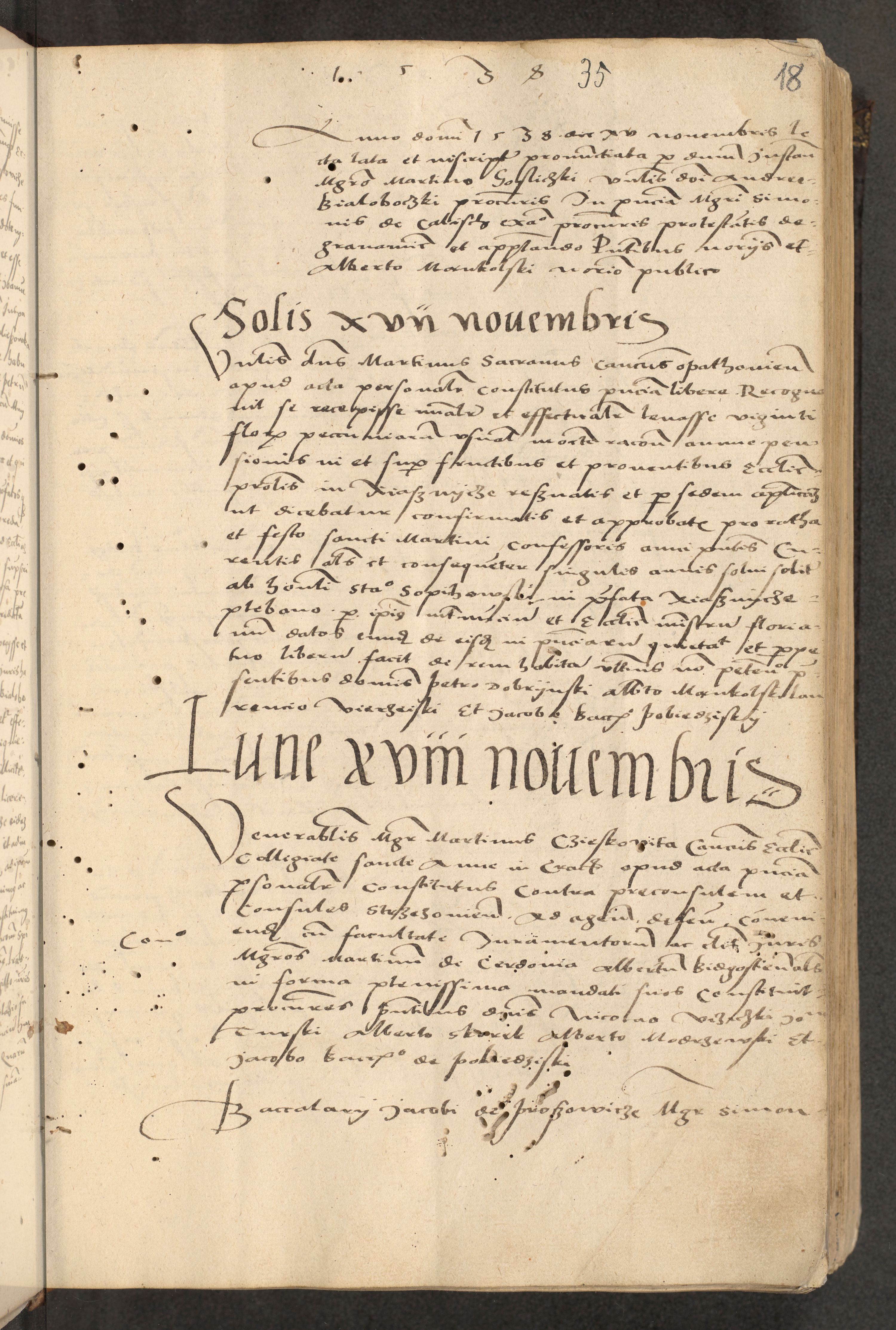 Acta actorum causarum, sentenciarum et obligationum coram reverendo patre domino Thoma Roznowski canonico et reverendissimi in Christo patris et domini domini Patri Dei gratia Cracoviensis. Sabbato, 26 Octobris in ecclesiam suam solenniter recepti officialis generalis Cracoviensis dinita administratura, qua fungebatur post mortem reverendissimi olim felicis recordationis domini Joannis Choiecki episcopi Cracoviensis et Regni Polonie cancelarii anno presenti currenti videlicet 1538, die 11 Marcii Piotrcovie in comiciis celebratis circiter 23 horam defuncti sepulto corpore nona eiusdemque obsequiis X respective Aprilis peractis electo sub indictione XI, pontificatu vero sanctissimi in Christo patris et domini nostri domini Pauli divina providencia pape tercii foeliciter moderni, anno quarto, incepta felicibus auspiciis continuantur ordine processu infrascripto