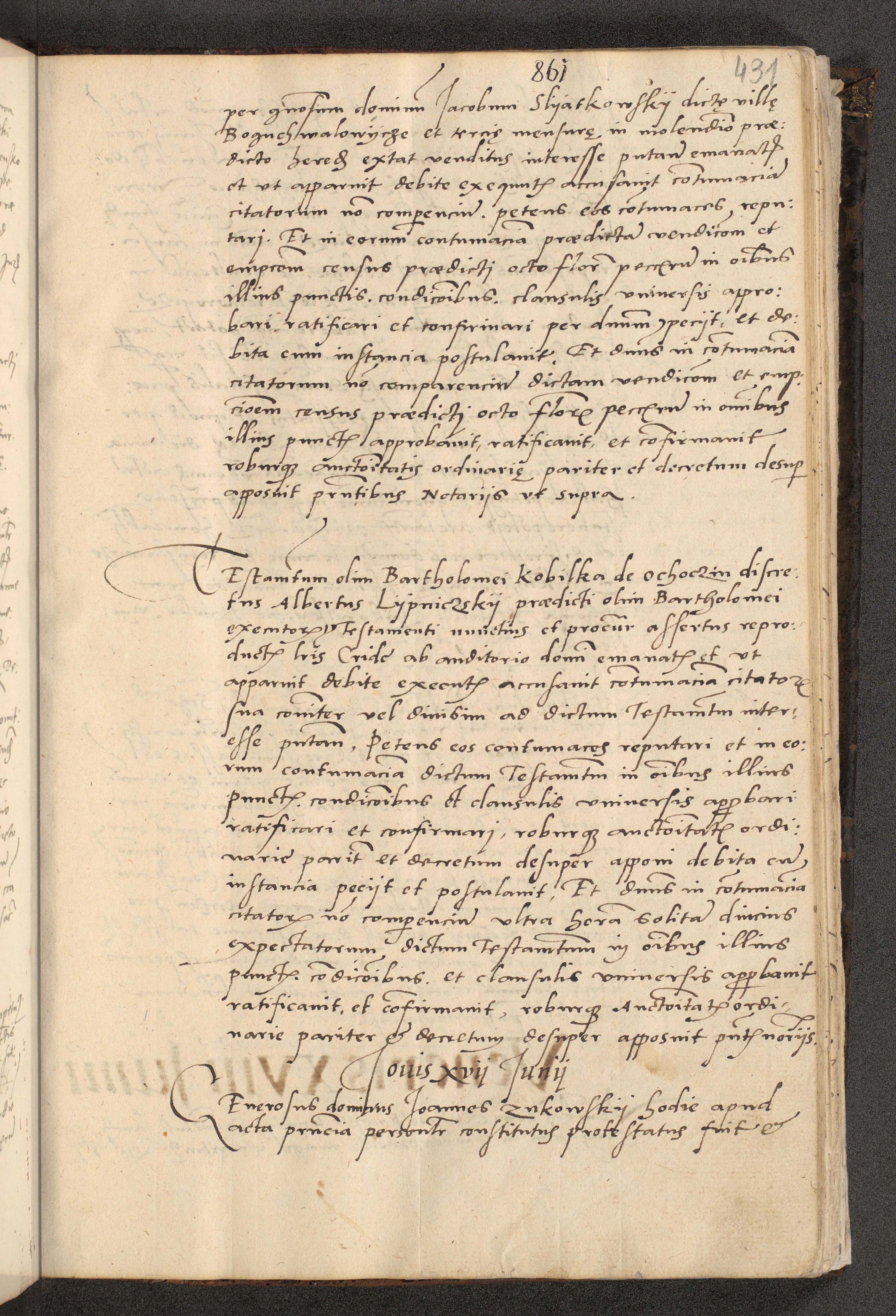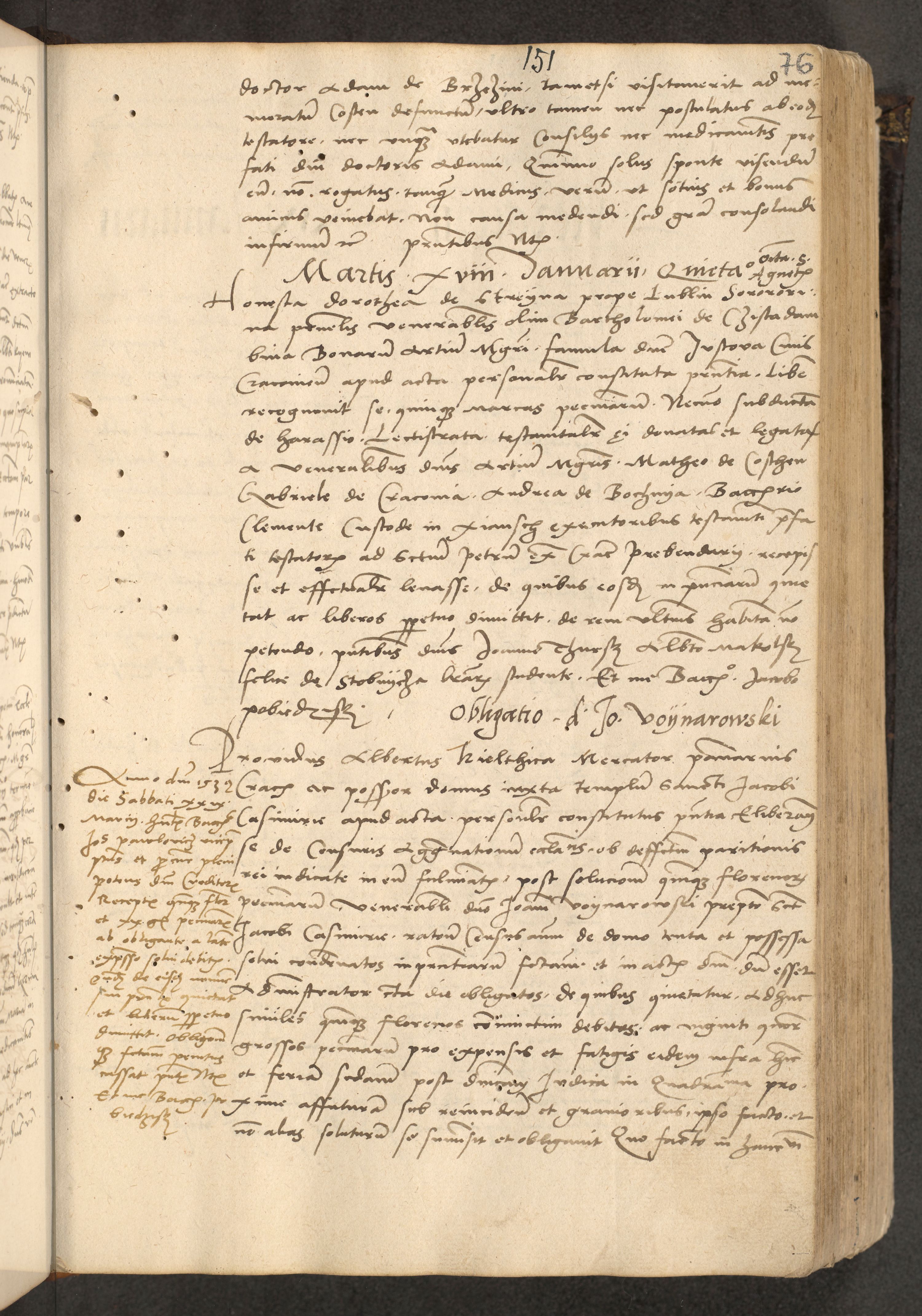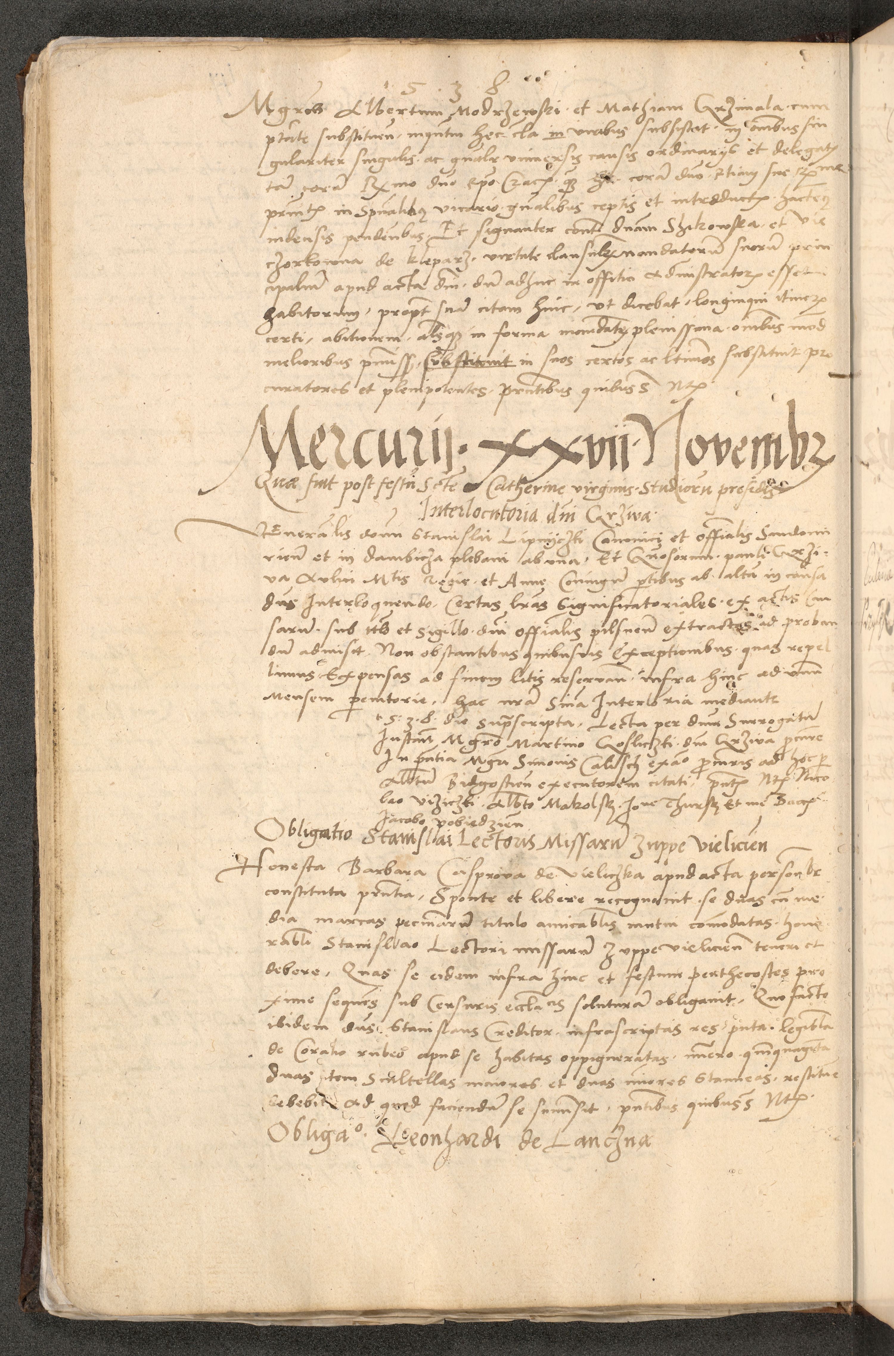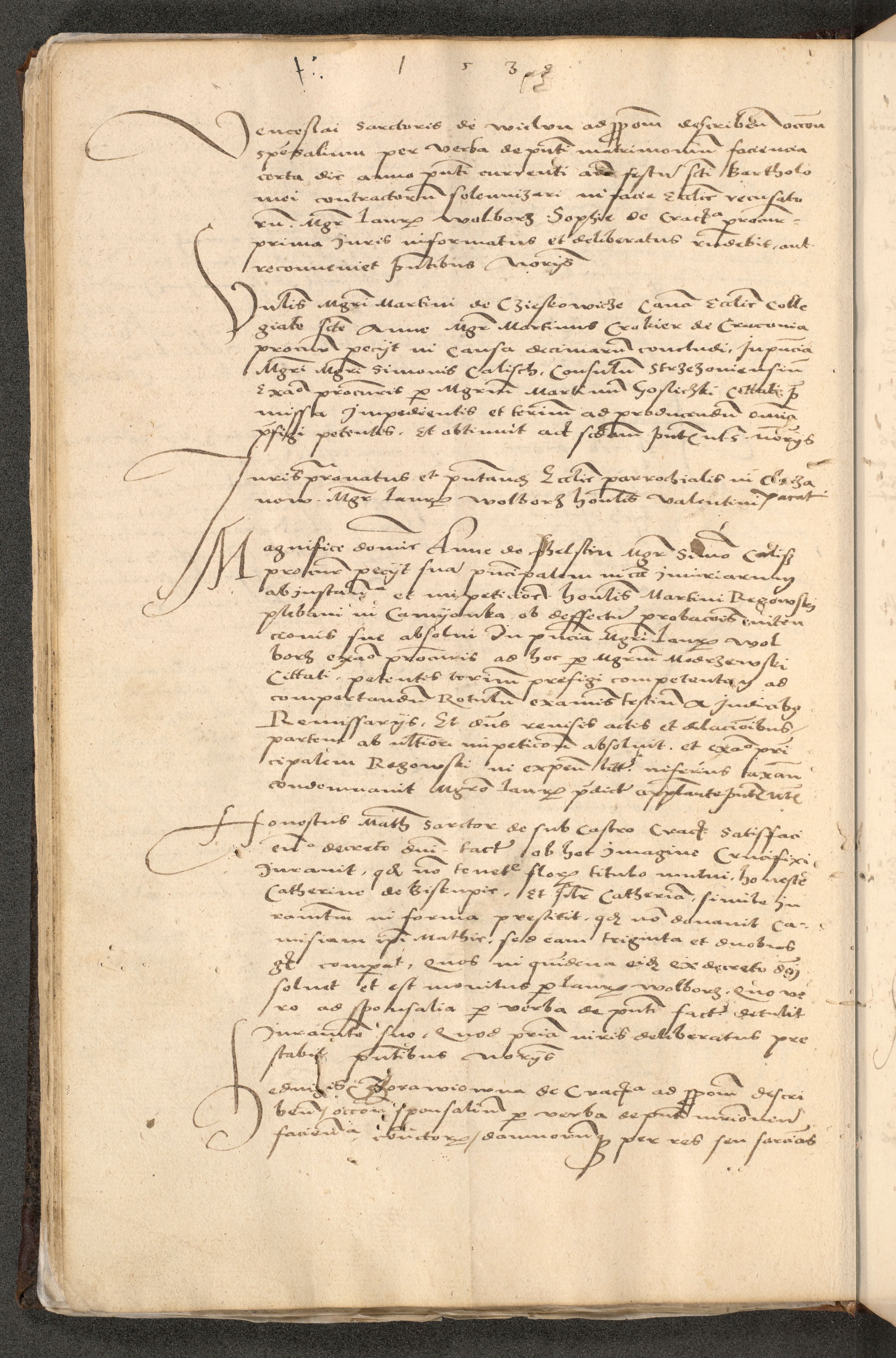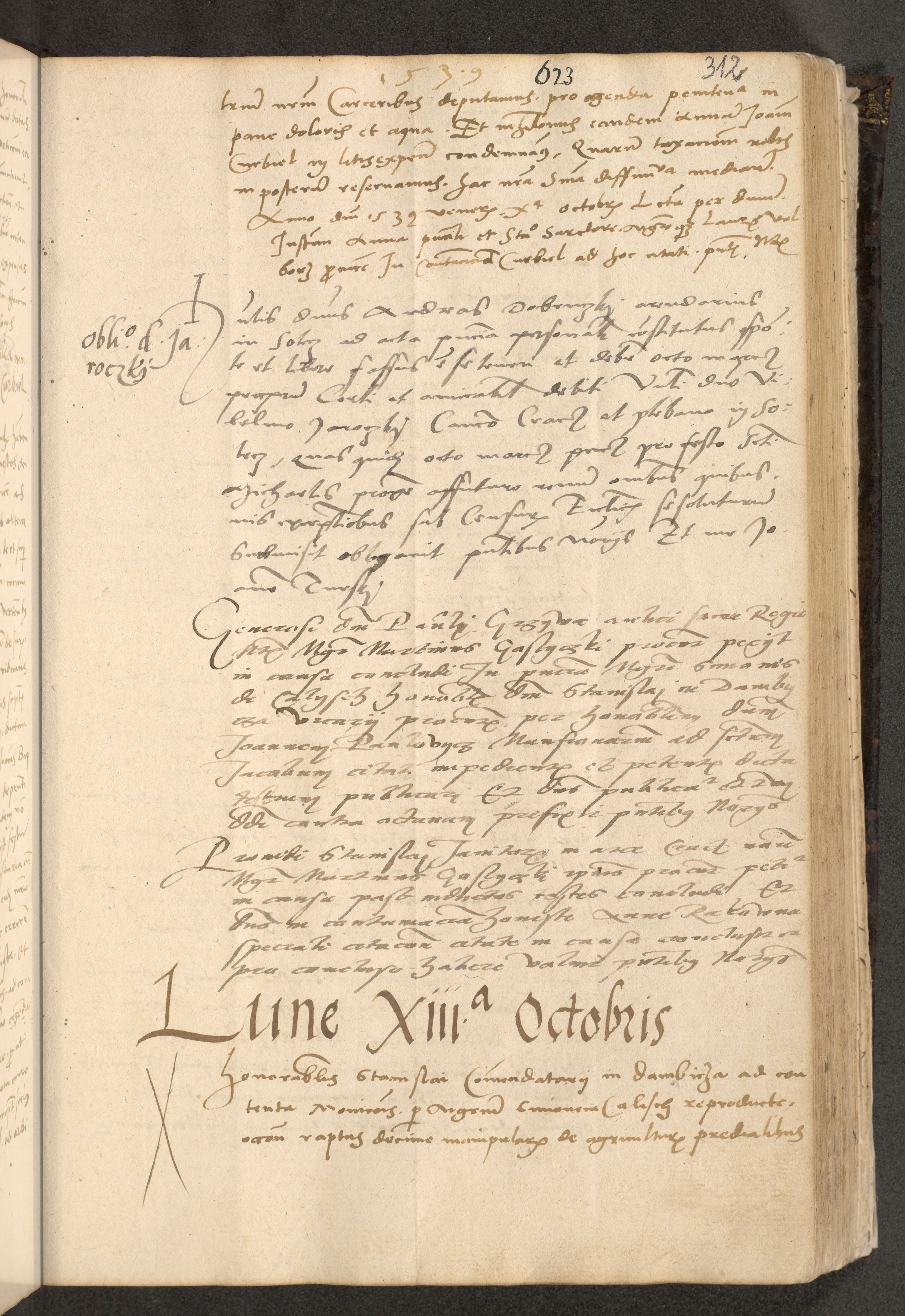 Acta actorum causarum, sentenciarum et obligationum coram reverendo patre domino Thoma Roznowski canonico et reverendissimi in Christo patris et domini domini Patri Dei gratia Cracoviensis. Sabbato, 26 Octobris in ecclesiam suam solenniter recepti officialis generalis Cracoviensis dinita administratura, qua fungebatur post mortem reverendissimi olim felicis recordationis domini Joannis Choiecki episcopi Cracoviensis et Regni Polonie cancelarii anno presenti currenti videlicet 1538, die 11 Marcii Piotrcovie in comiciis celebratis circiter 23 horam defuncti sepulto corpore nona eiusdemque obsequiis X respective Aprilis peractis electo sub indictione XI, pontificatu vero sanctissimi in Christo patris et domini nostri domini Pauli divina providencia pape tercii foeliciter moderni, anno quarto, incepta felicibus auspiciis continuantur ordine processu infrascripto
