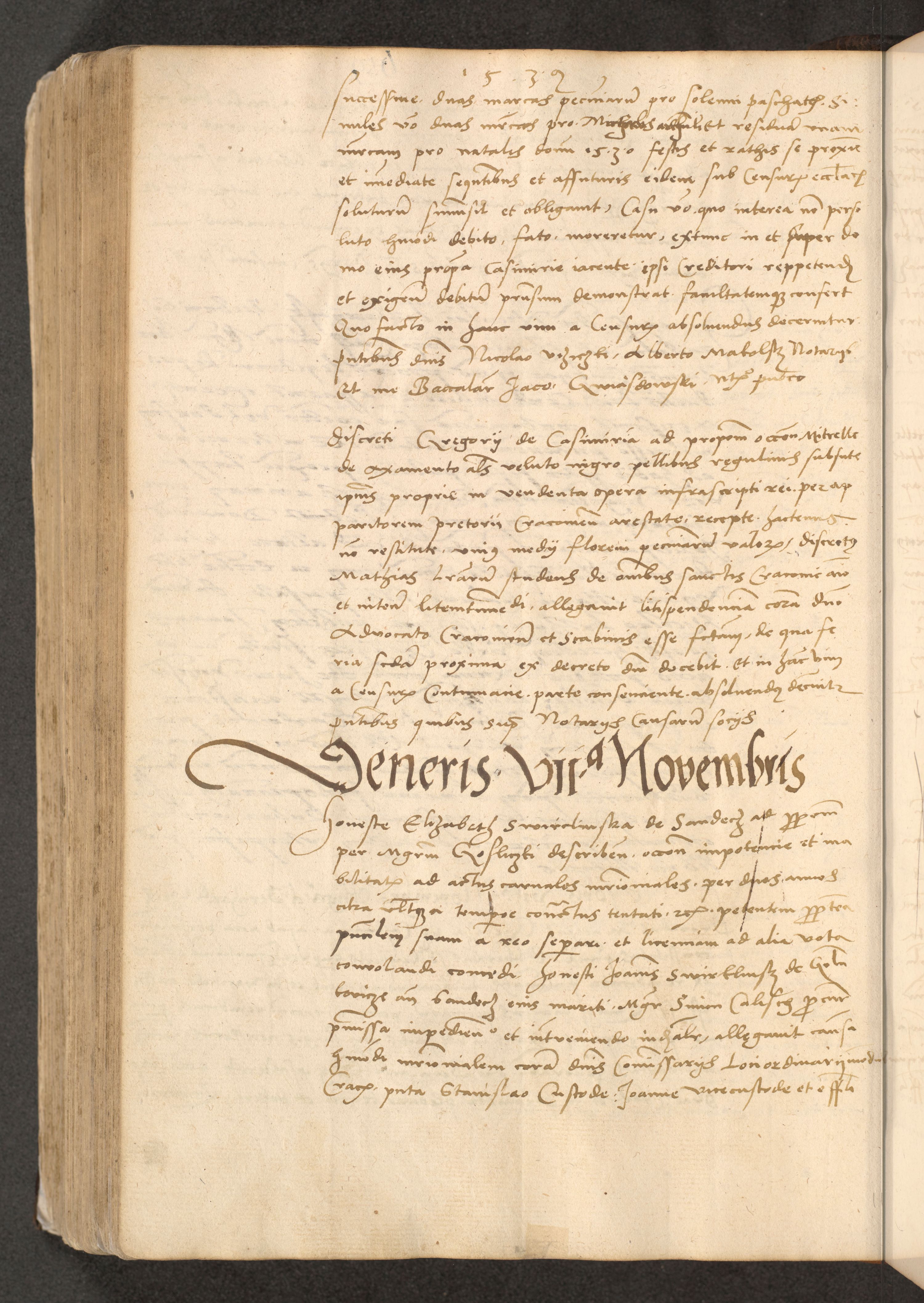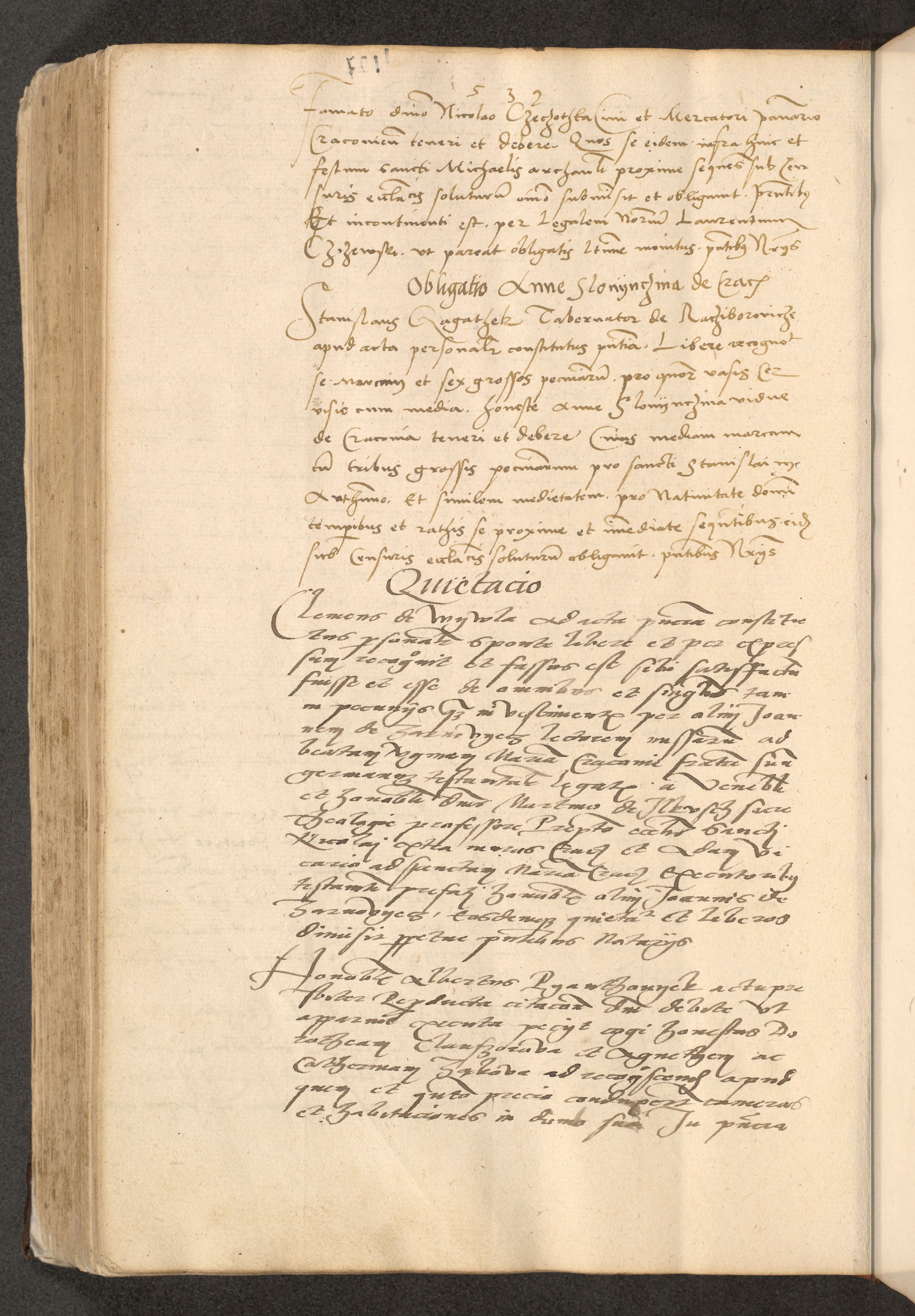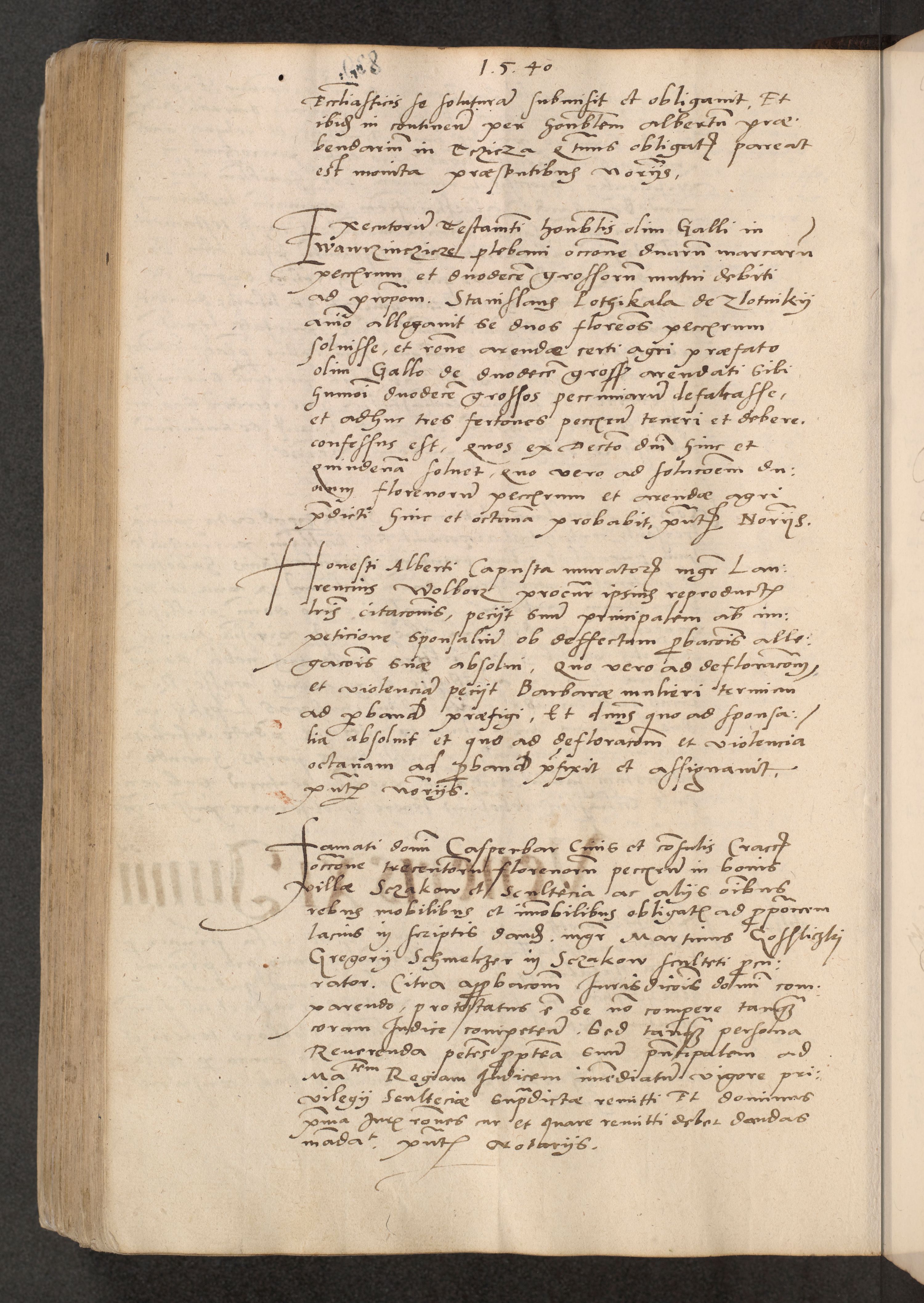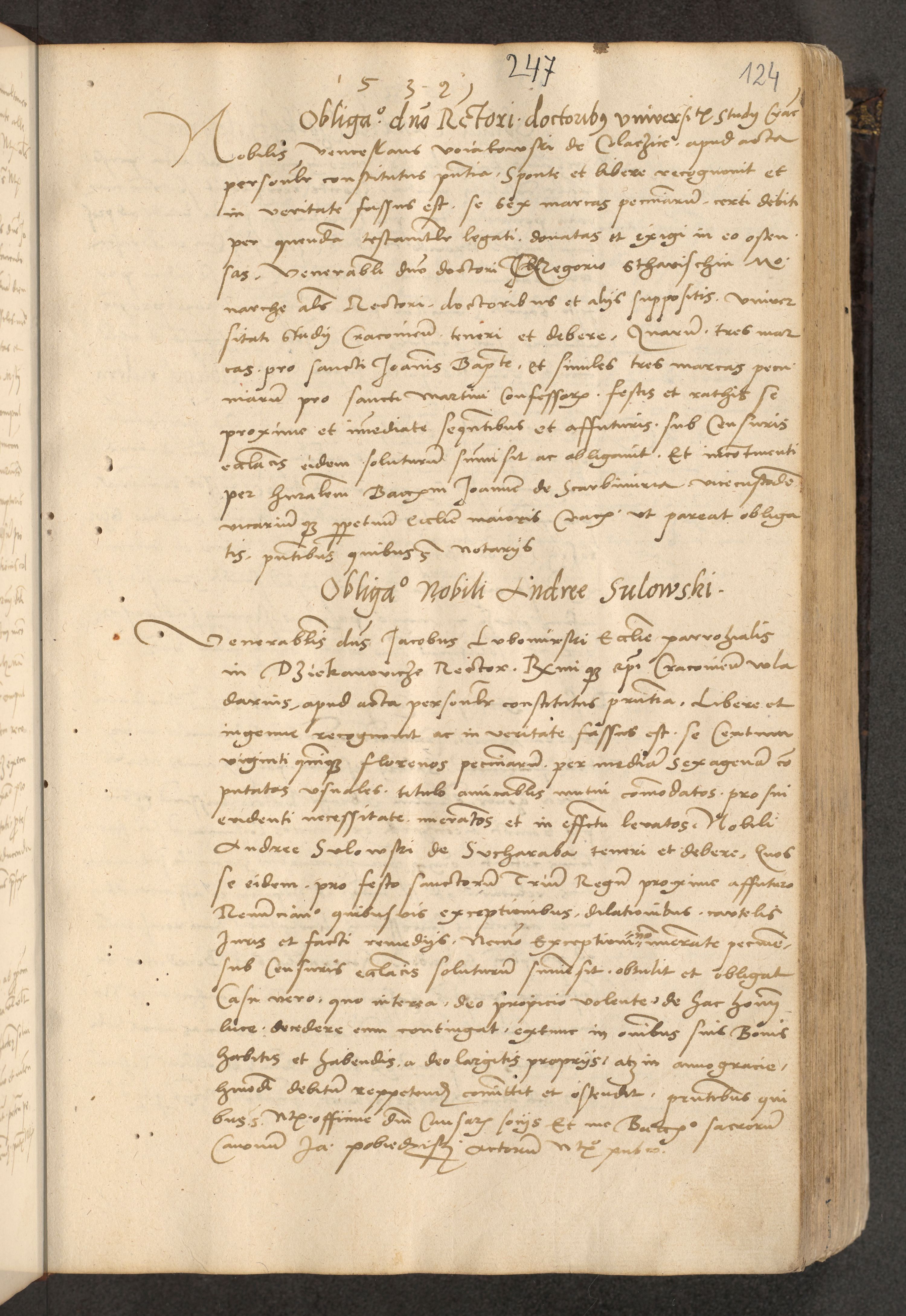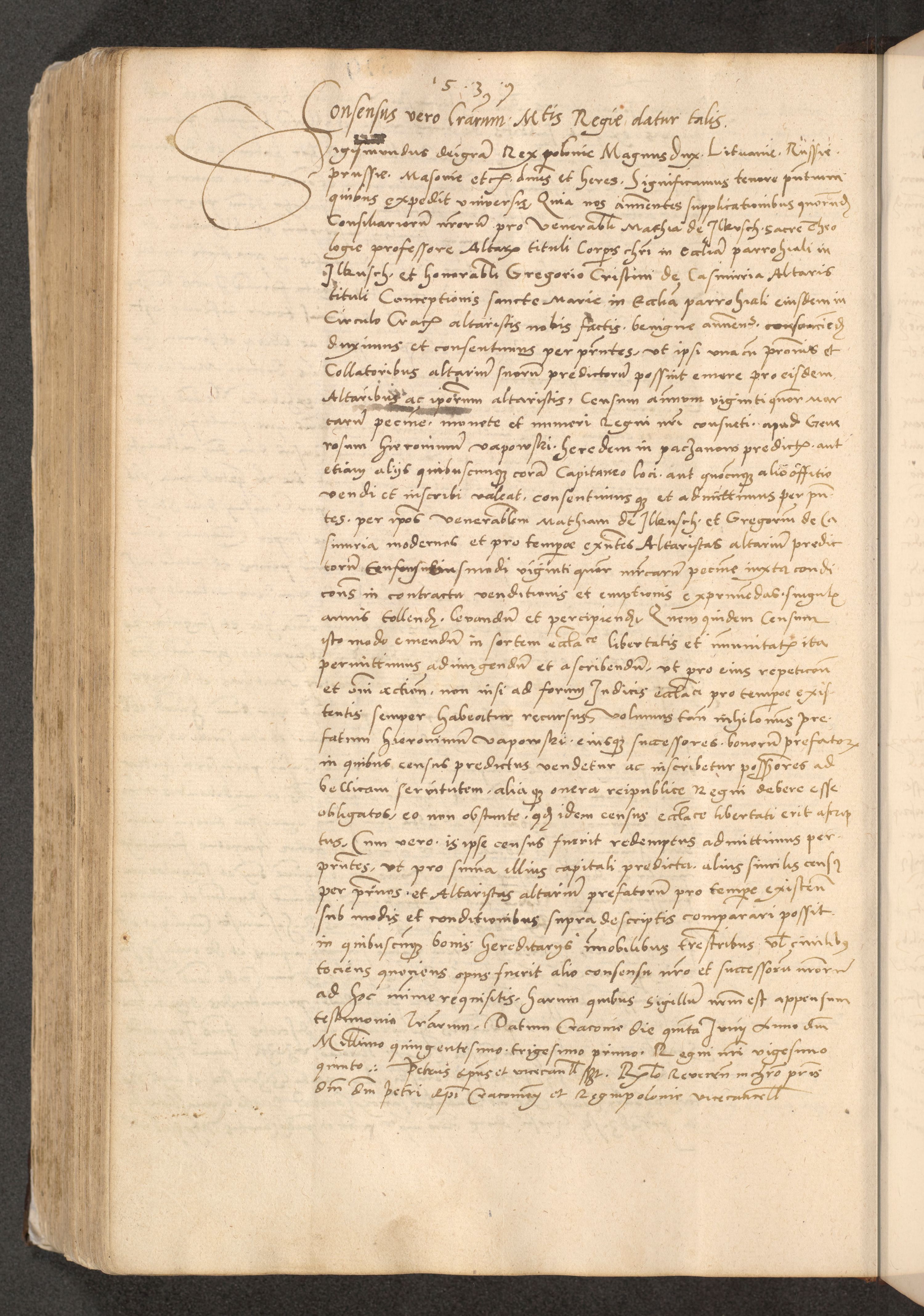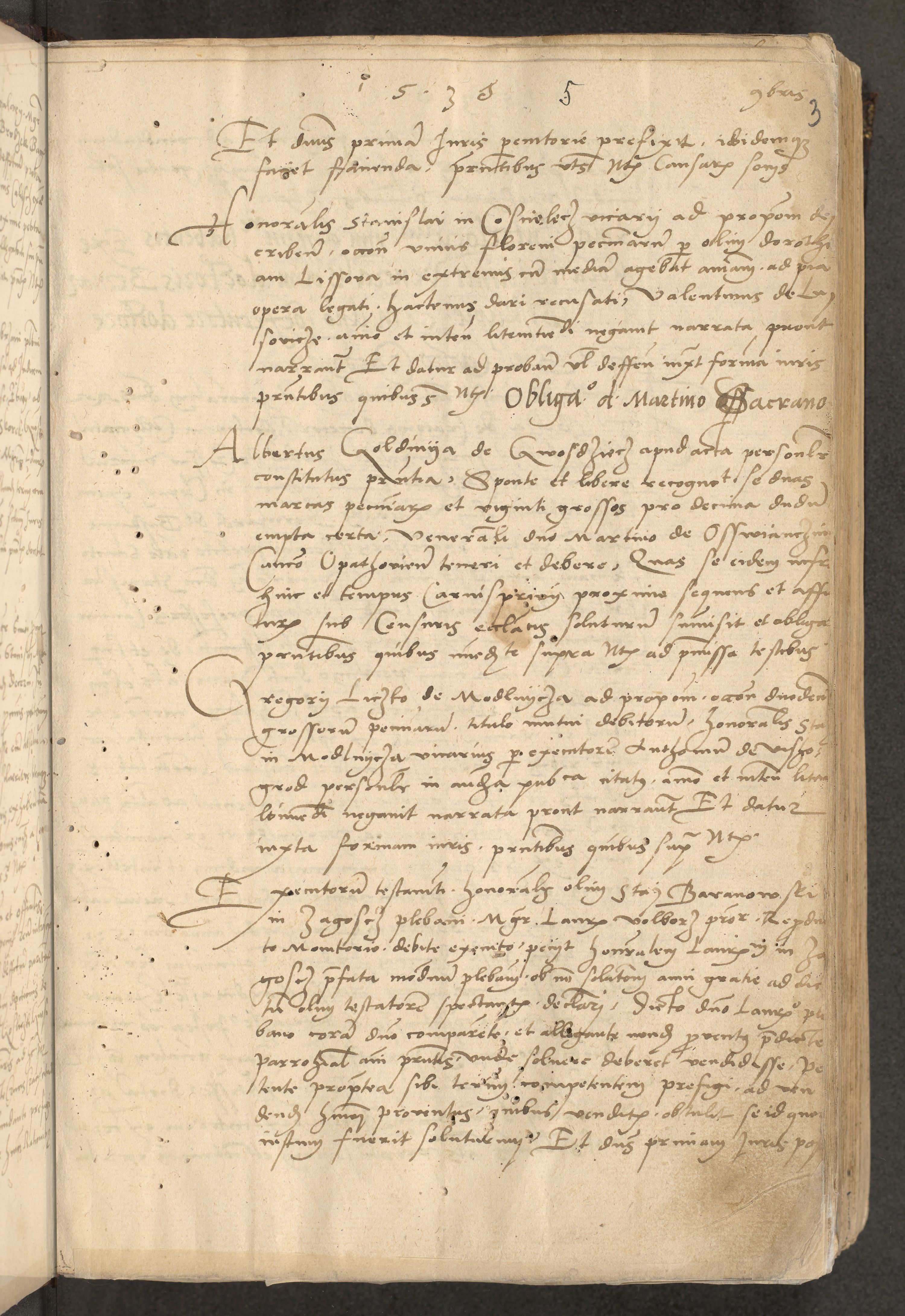 Acta actorum causarum, sentenciarum et obligationum coram reverendo patre domino Thoma Roznowski canonico et reverendissimi in Christo patris et domini domini Patri Dei gratia Cracoviensis. Sabbato, 26 Octobris in ecclesiam suam solenniter recepti officialis generalis Cracoviensis dinita administratura, qua fungebatur post mortem reverendissimi olim felicis recordationis domini Joannis Choiecki episcopi Cracoviensis et Regni Polonie cancelarii anno presenti currenti videlicet 1538, die 11 Marcii Piotrcovie in comiciis celebratis circiter 23 horam defuncti sepulto corpore nona eiusdemque obsequiis X respective Aprilis peractis electo sub indictione XI, pontificatu vero sanctissimi in Christo patris et domini nostri domini Pauli divina providencia pape tercii foeliciter moderni, anno quarto, incepta felicibus auspiciis continuantur ordine processu infrascripto