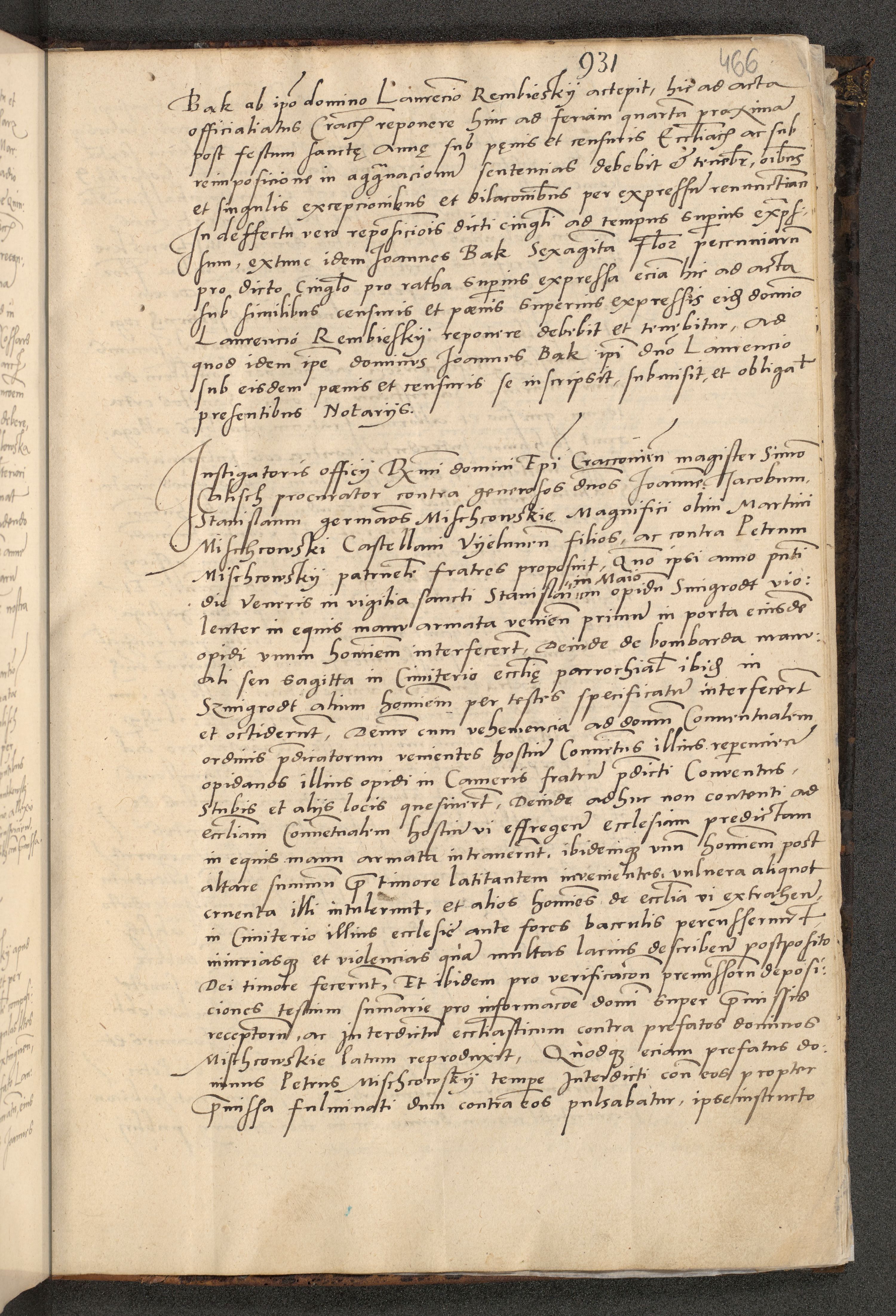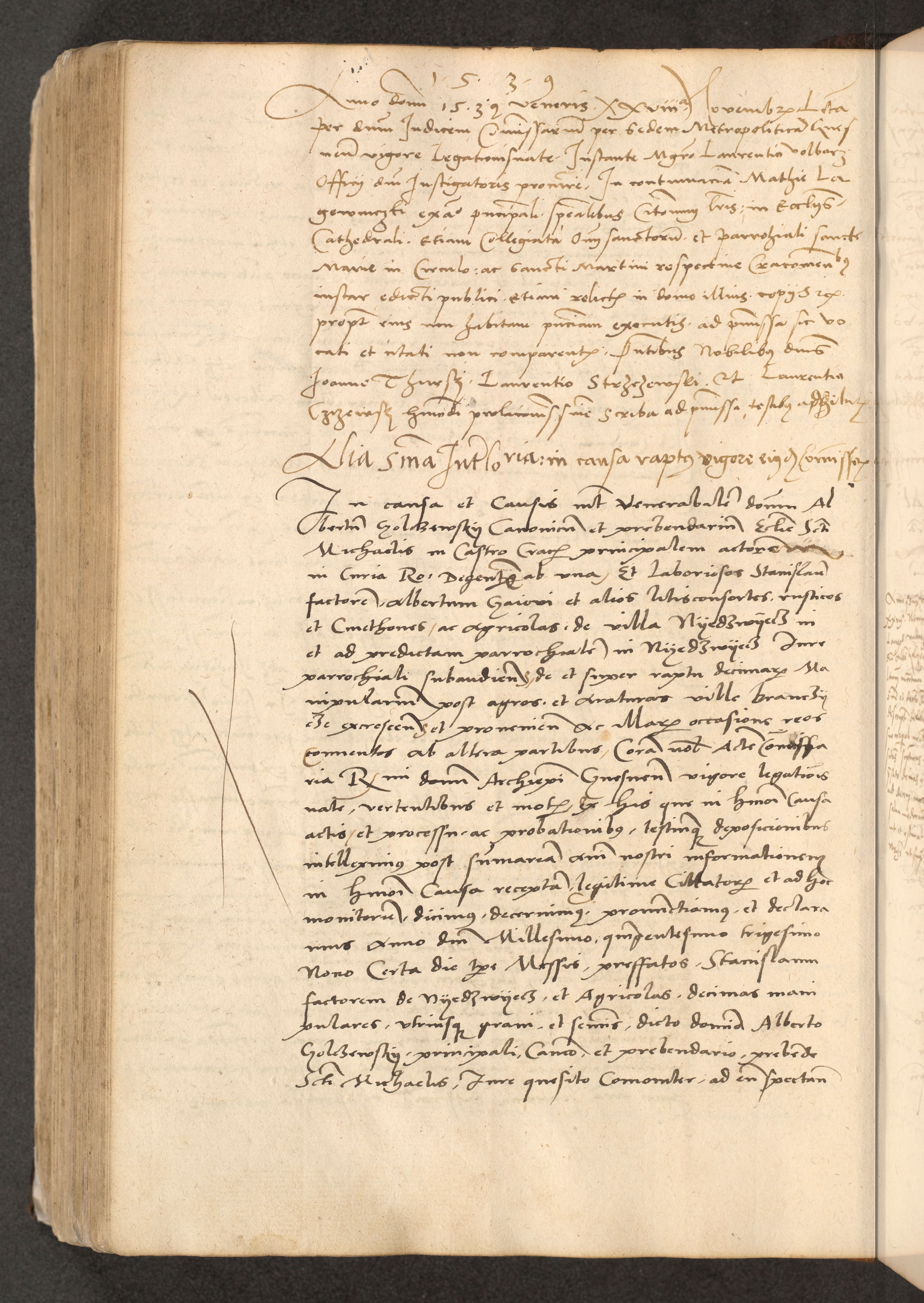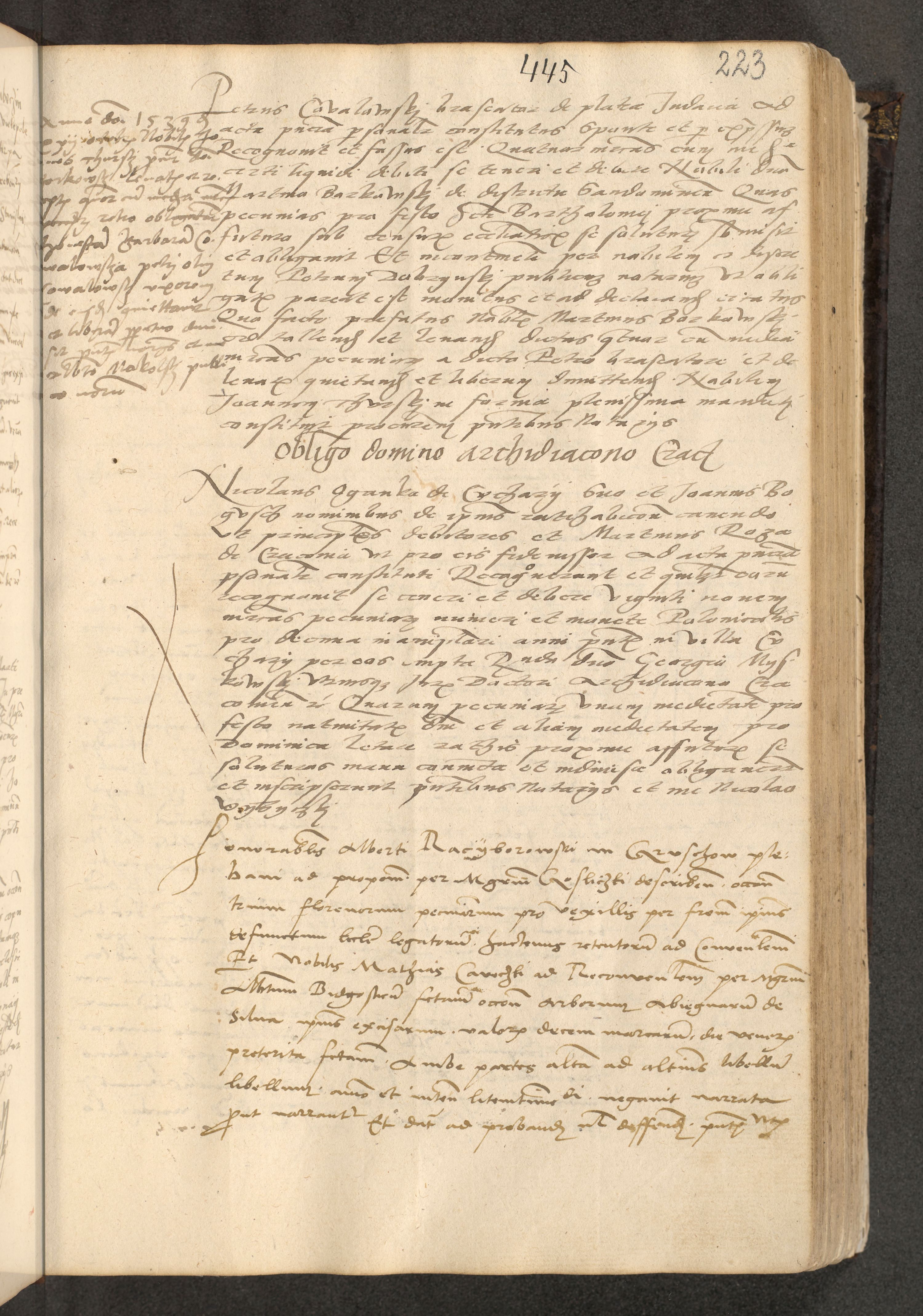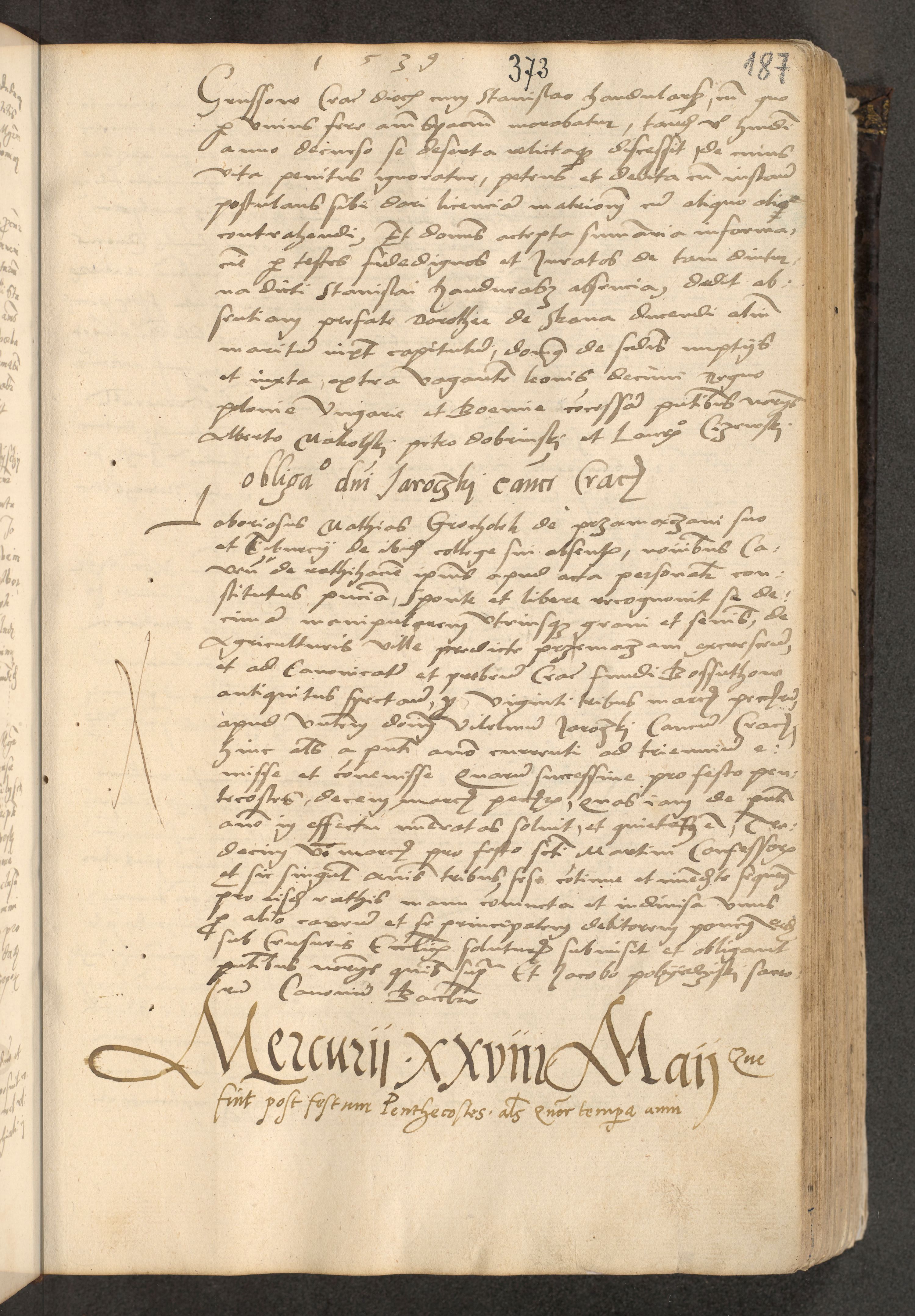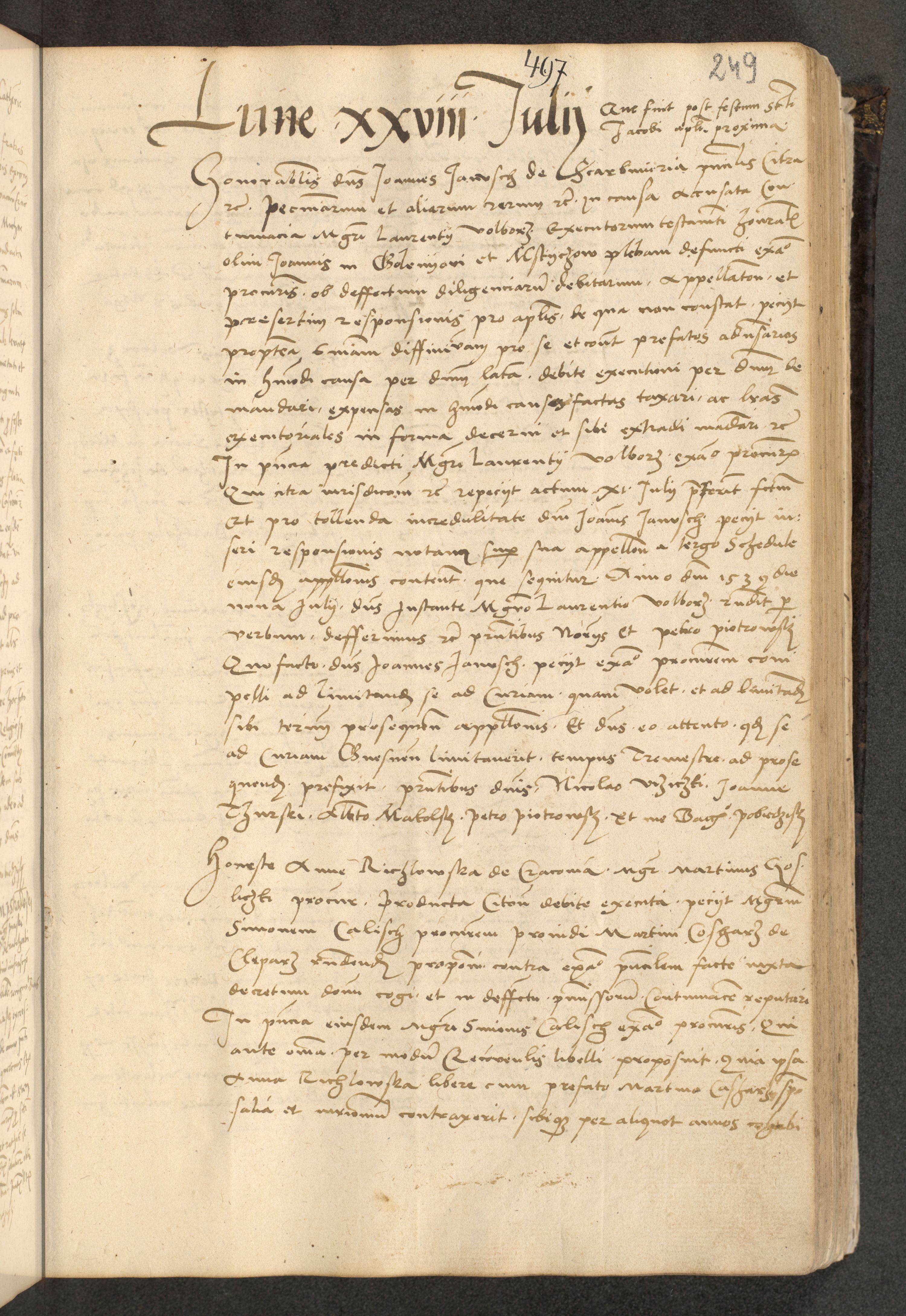 Acta actorum causarum, sentenciarum et obligationum coram reverendo patre domino Thoma Roznowski canonico et reverendissimi in Christo patris et domini domini Patri Dei gratia Cracoviensis. Sabbato, 26 Octobris in ecclesiam suam solenniter recepti officialis generalis Cracoviensis dinita administratura, qua fungebatur post mortem reverendissimi olim felicis recordationis domini Joannis Choiecki episcopi Cracoviensis et Regni Polonie cancelarii anno presenti currenti videlicet 1538, die 11 Marcii Piotrcovie in comiciis celebratis circiter 23 horam defuncti sepulto corpore nona eiusdemque obsequiis X respective Aprilis peractis electo sub indictione XI, pontificatu vero sanctissimi in Christo patris et domini nostri domini Pauli divina providencia pape tercii foeliciter moderni, anno quarto, incepta felicibus auspiciis continuantur ordine processu infrascripto