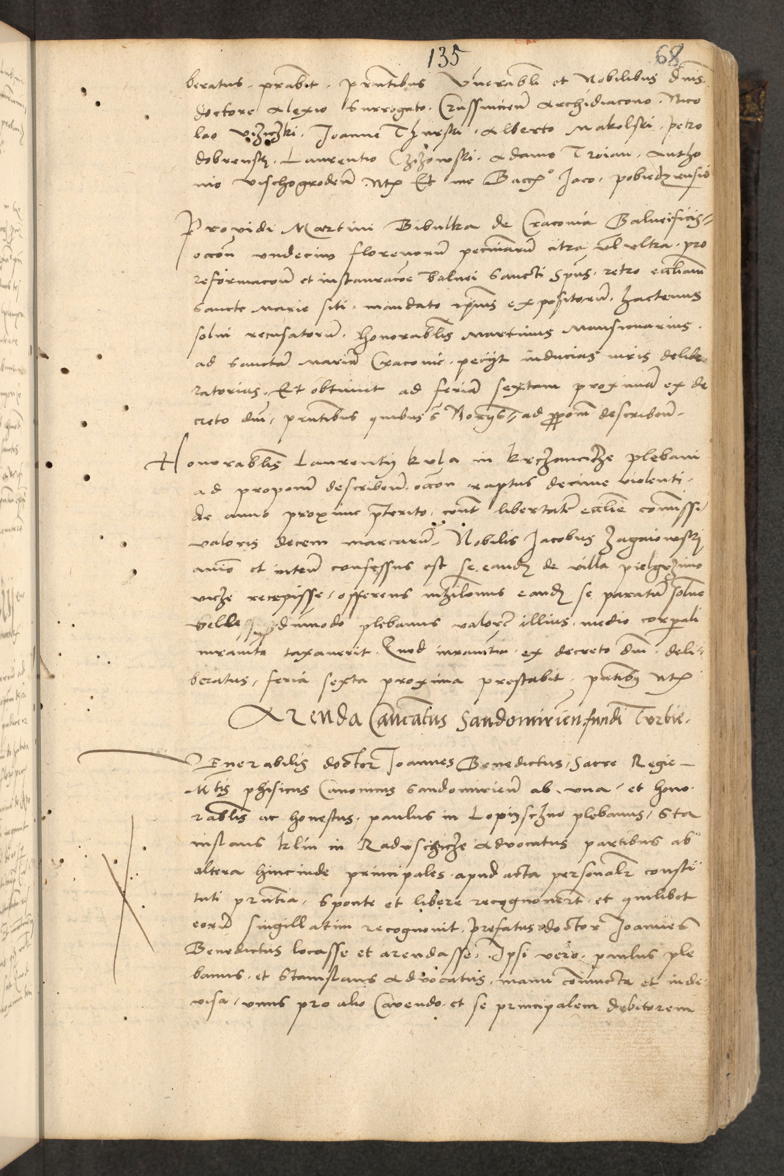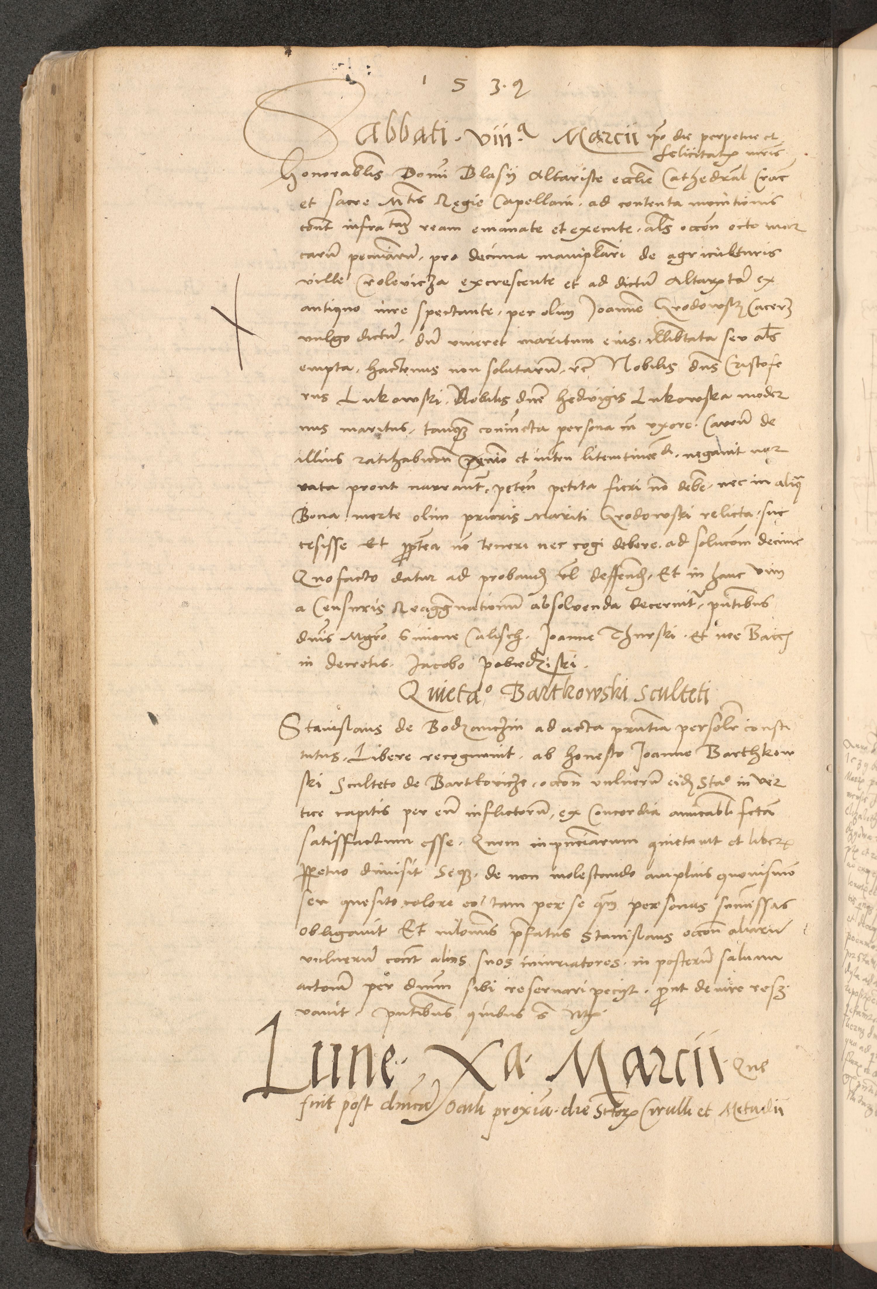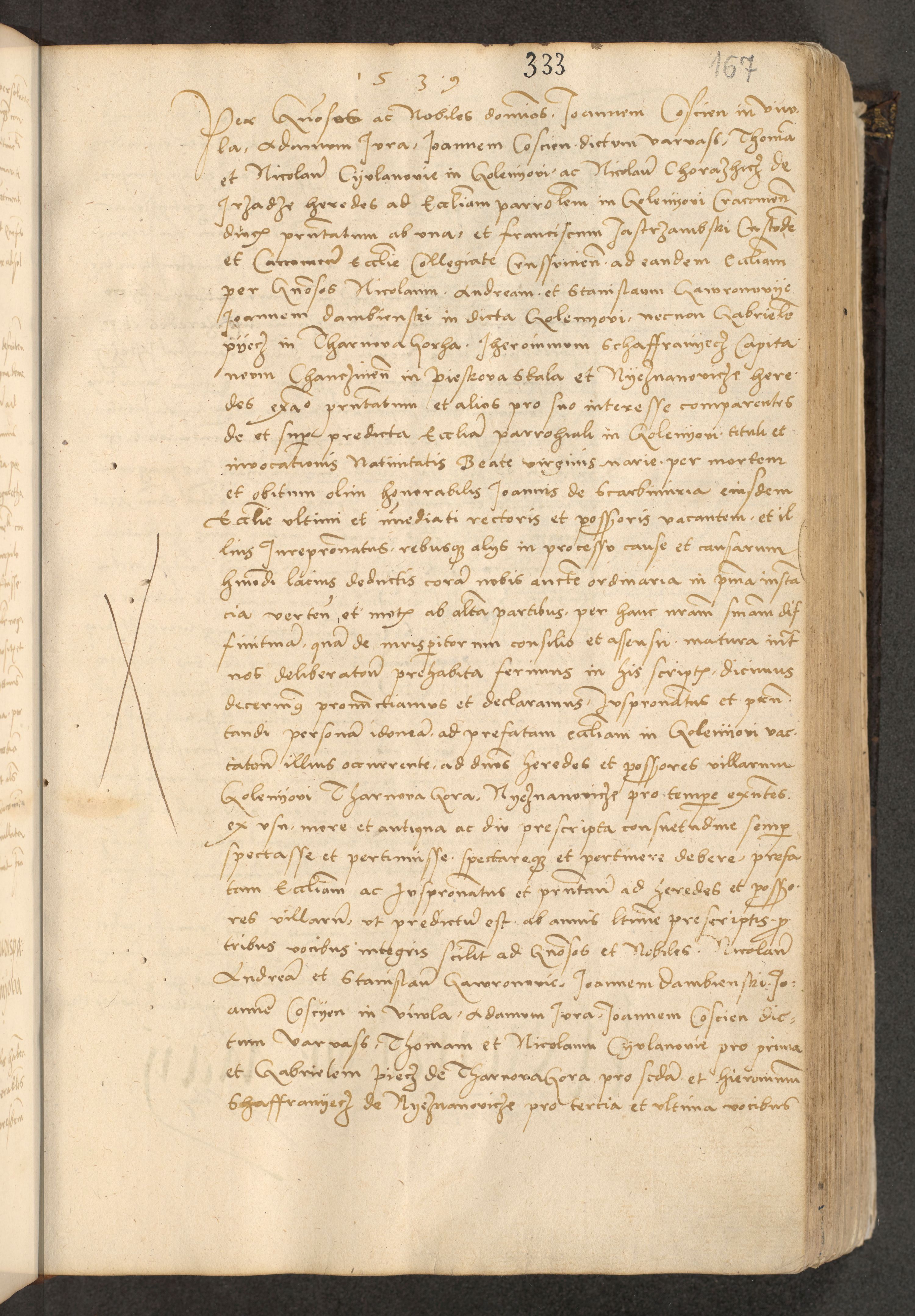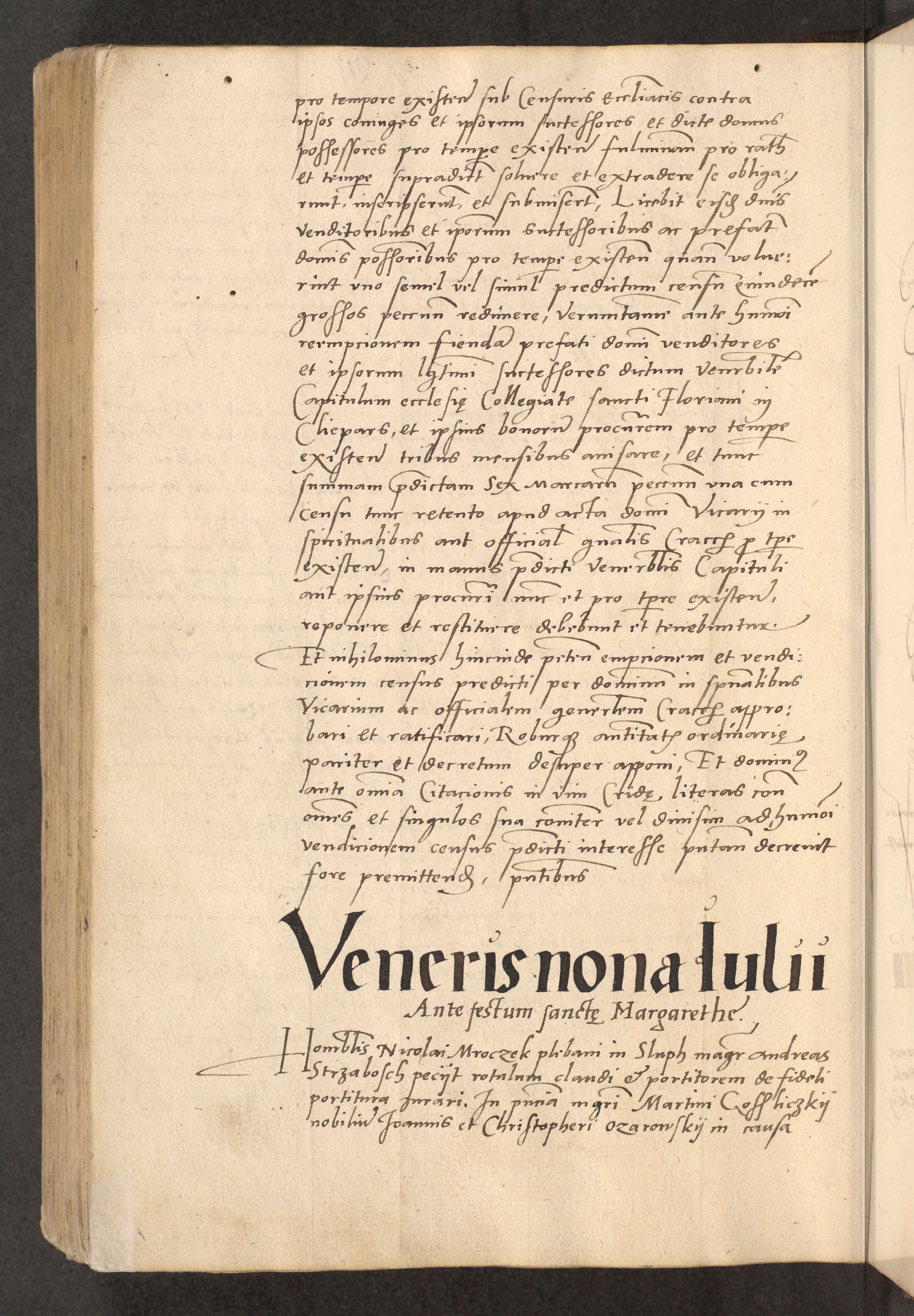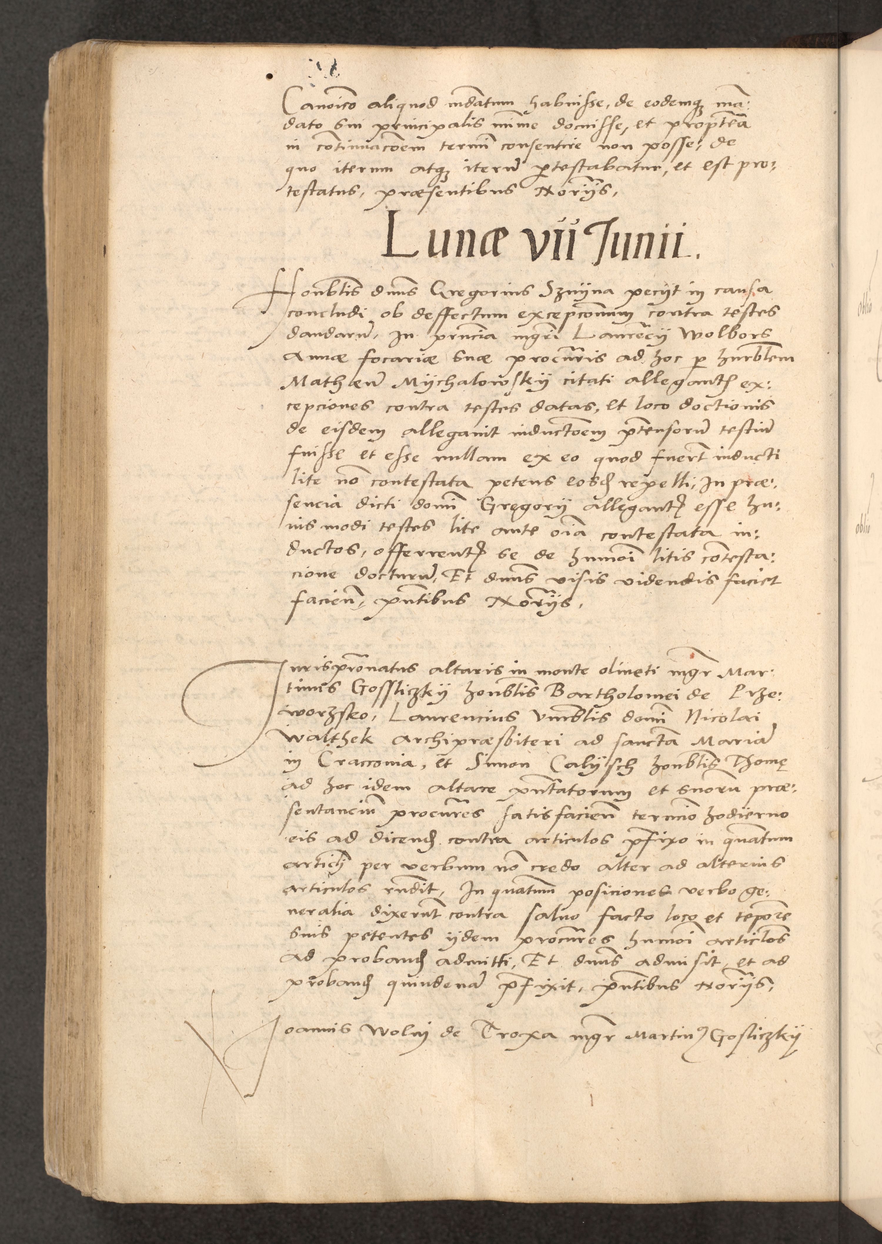 Acta actorum causarum, sentenciarum et obligationum coram reverendo patre domino Thoma Roznowski canonico et reverendissimi in Christo patris et domini domini Patri Dei gratia Cracoviensis. Sabbato, 26 Octobris in ecclesiam suam solenniter recepti officialis generalis Cracoviensis dinita administratura, qua fungebatur post mortem reverendissimi olim felicis recordationis domini Joannis Choiecki episcopi Cracoviensis et Regni Polonie cancelarii anno presenti currenti videlicet 1538, die 11 Marcii Piotrcovie in comiciis celebratis circiter 23 horam defuncti sepulto corpore nona eiusdemque obsequiis X respective Aprilis peractis electo sub indictione XI, pontificatu vero sanctissimi in Christo patris et domini nostri domini Pauli divina providencia pape tercii foeliciter moderni, anno quarto, incepta felicibus auspiciis continuantur ordine processu infrascripto