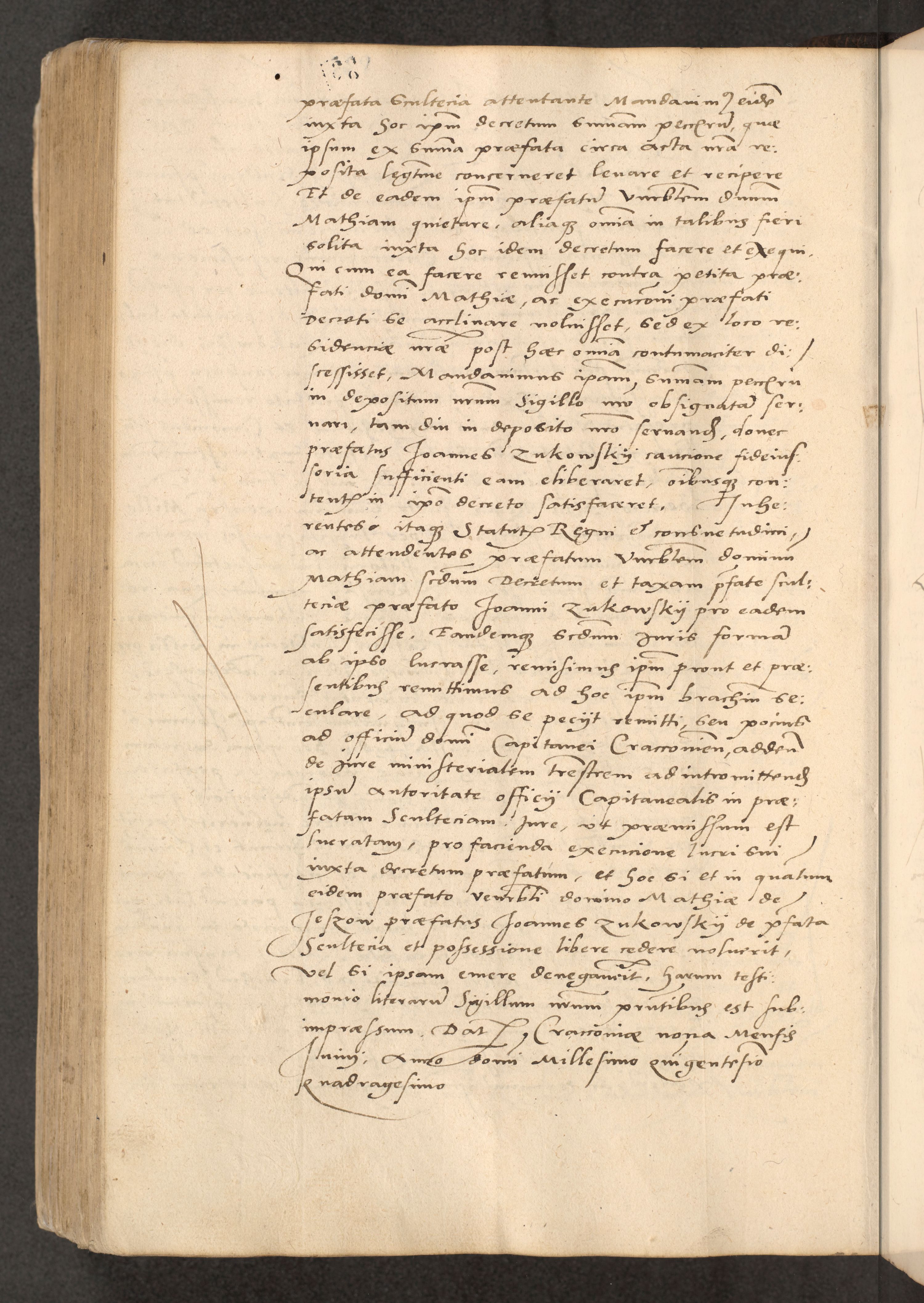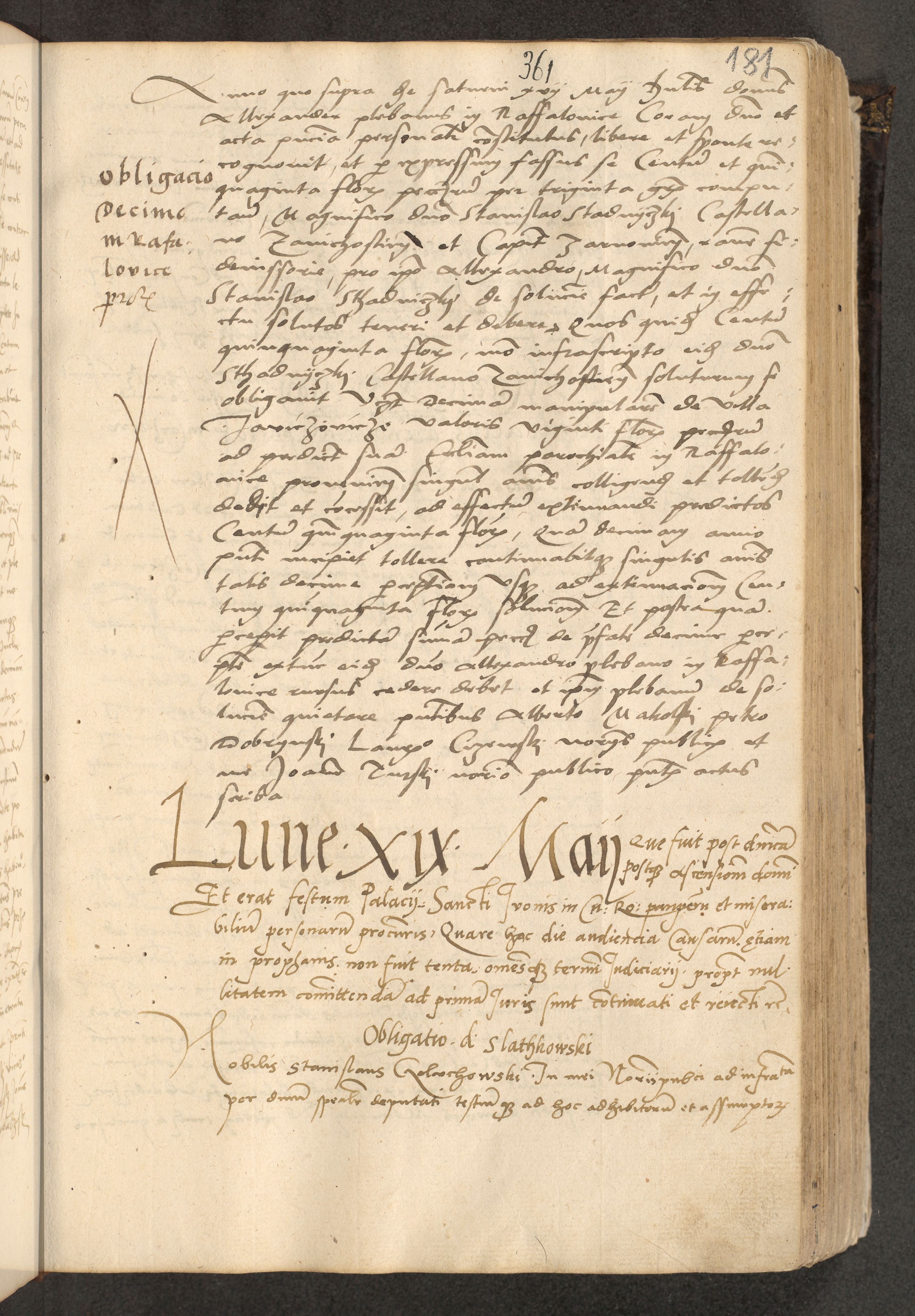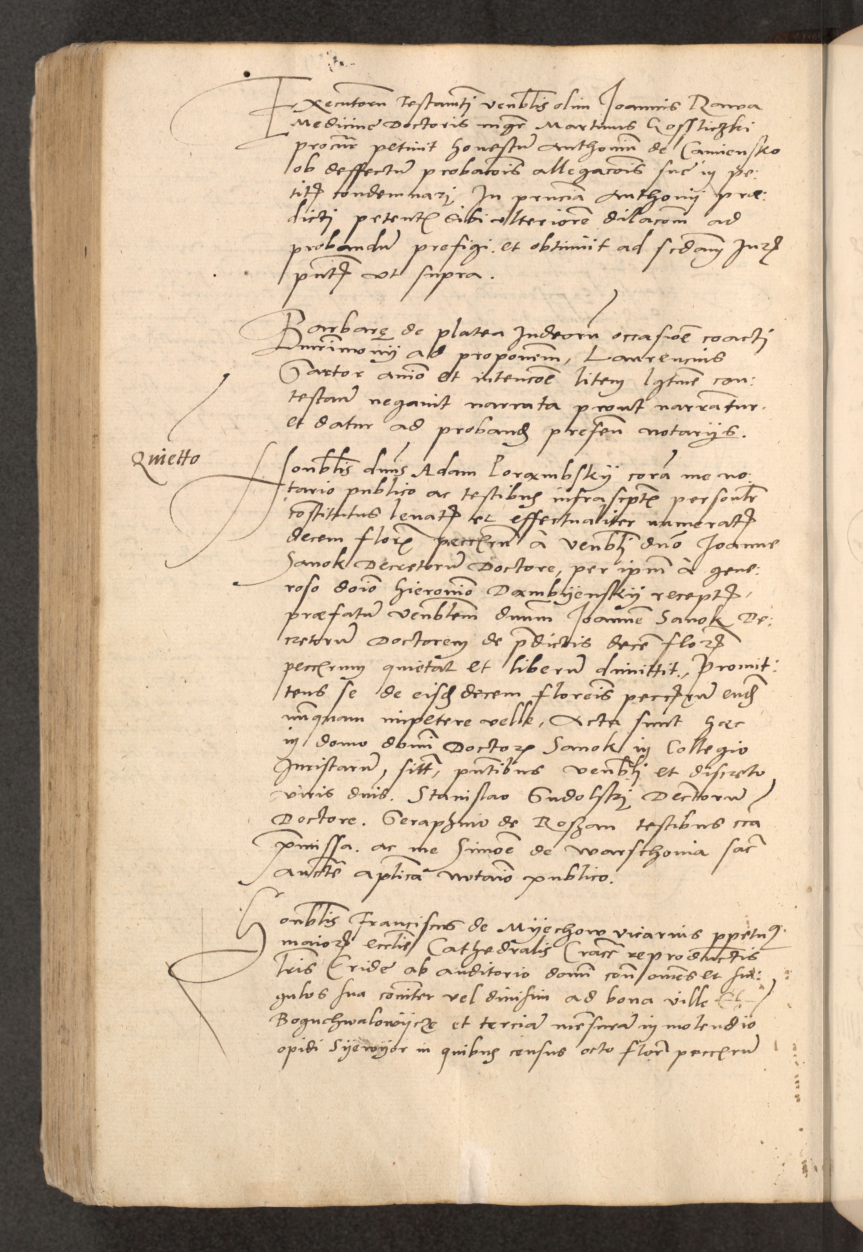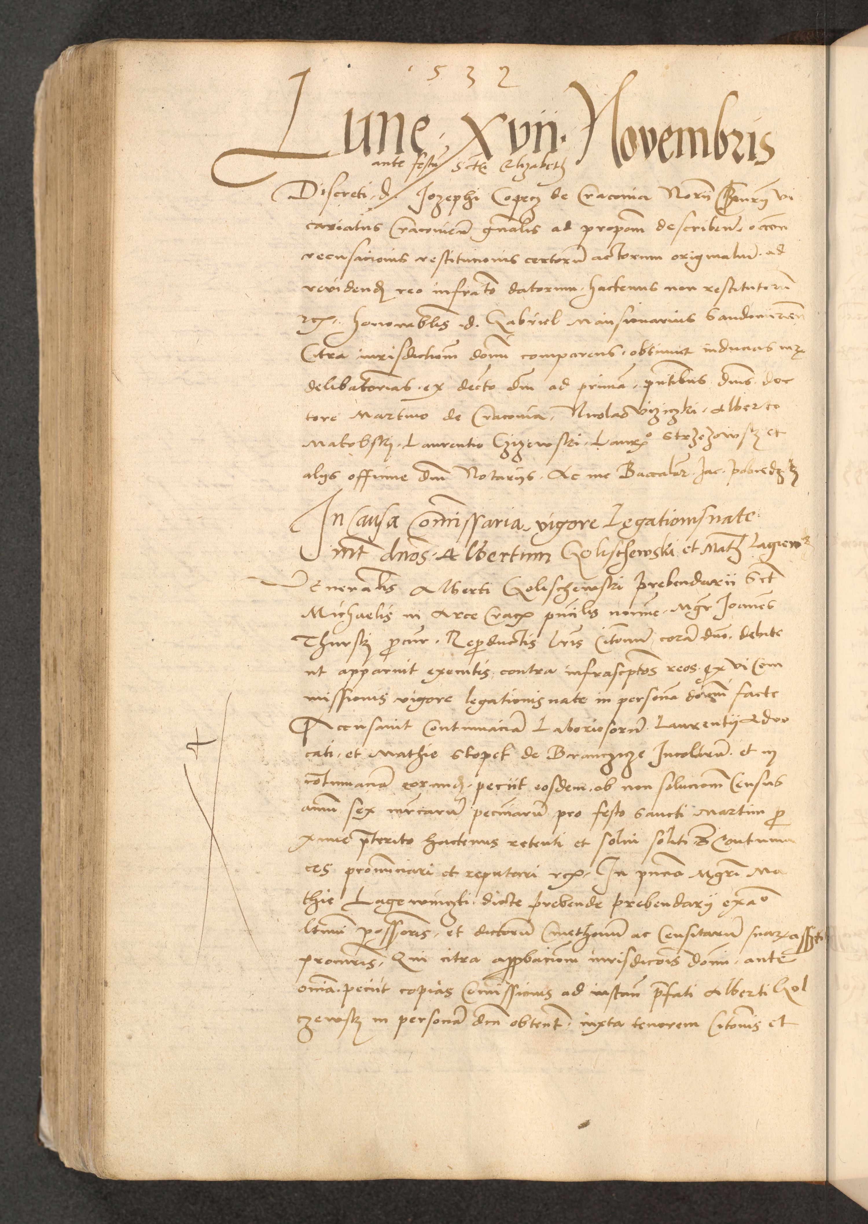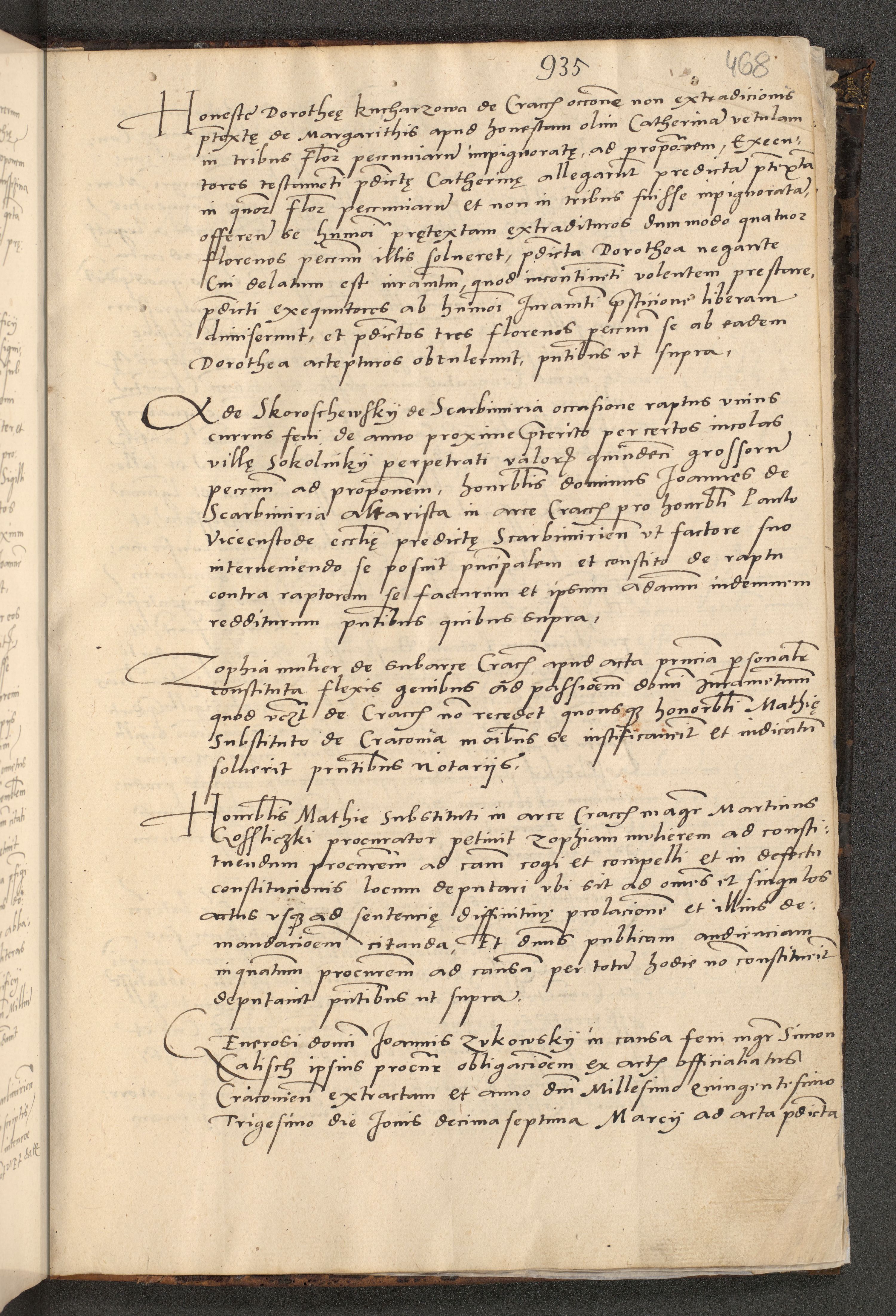 Acta actorum causarum, sentenciarum et obligationum coram reverendo patre domino Thoma Roznowski canonico et reverendissimi in Christo patris et domini domini Patri Dei gratia Cracoviensis. Sabbato, 26 Octobris in ecclesiam suam solenniter recepti officialis generalis Cracoviensis dinita administratura, qua fungebatur post mortem reverendissimi olim felicis recordationis domini Joannis Choiecki episcopi Cracoviensis et Regni Polonie cancelarii anno presenti currenti videlicet 1538, die 11 Marcii Piotrcovie in comiciis celebratis circiter 23 horam defuncti sepulto corpore nona eiusdemque obsequiis X respective Aprilis peractis electo sub indictione XI, pontificatu vero sanctissimi in Christo patris et domini nostri domini Pauli divina providencia pape tercii foeliciter moderni, anno quarto, incepta felicibus auspiciis continuantur ordine processu infrascripto