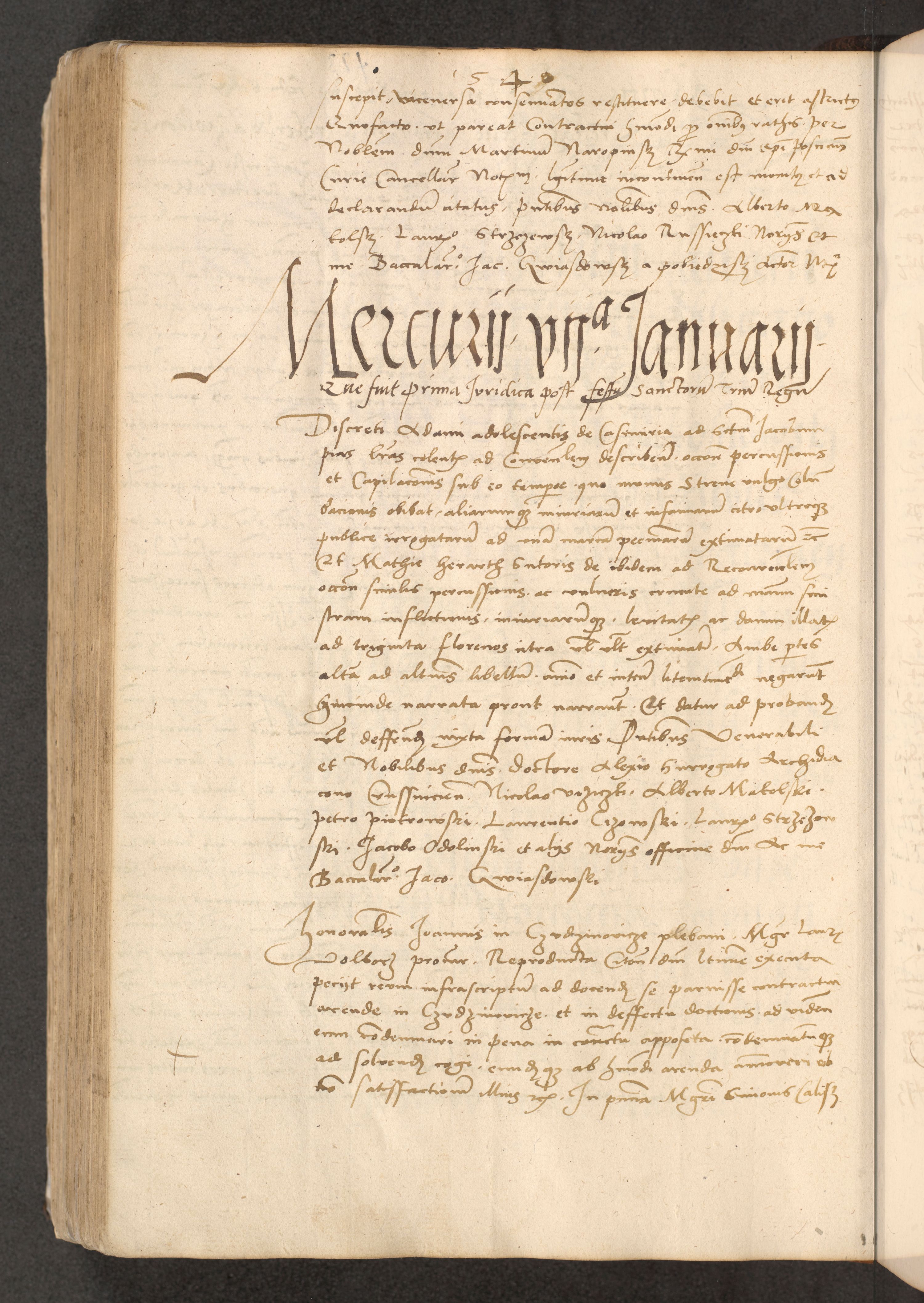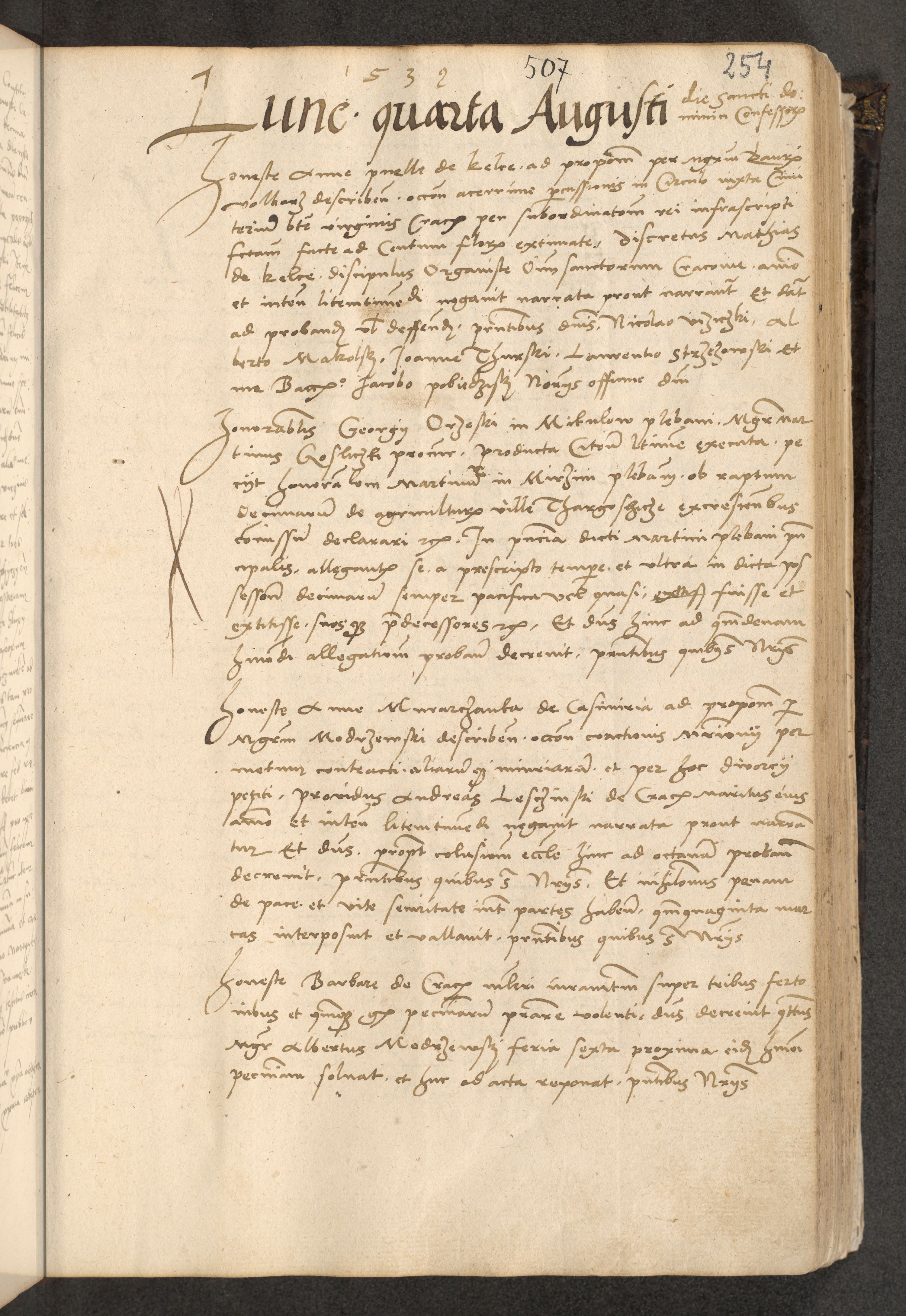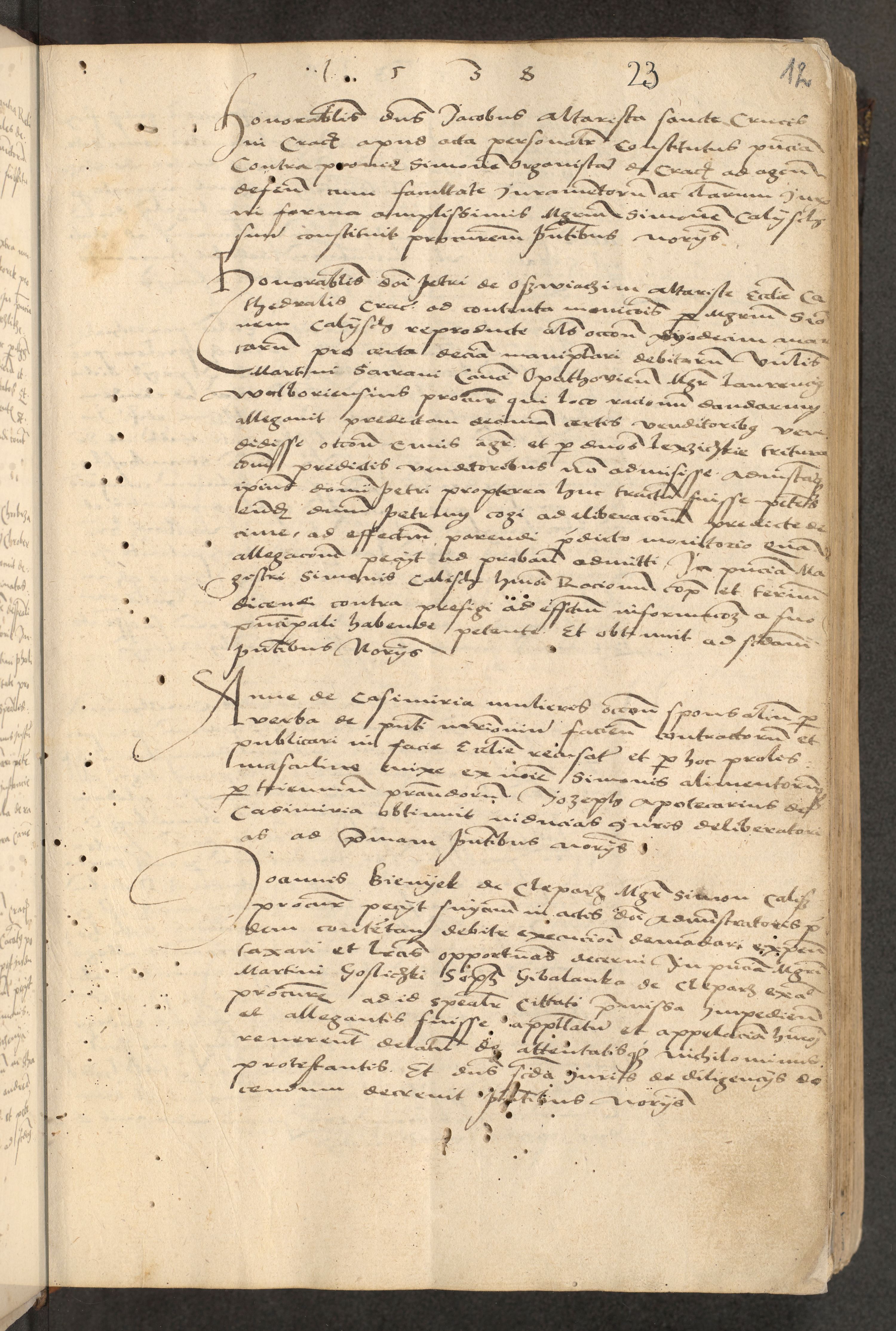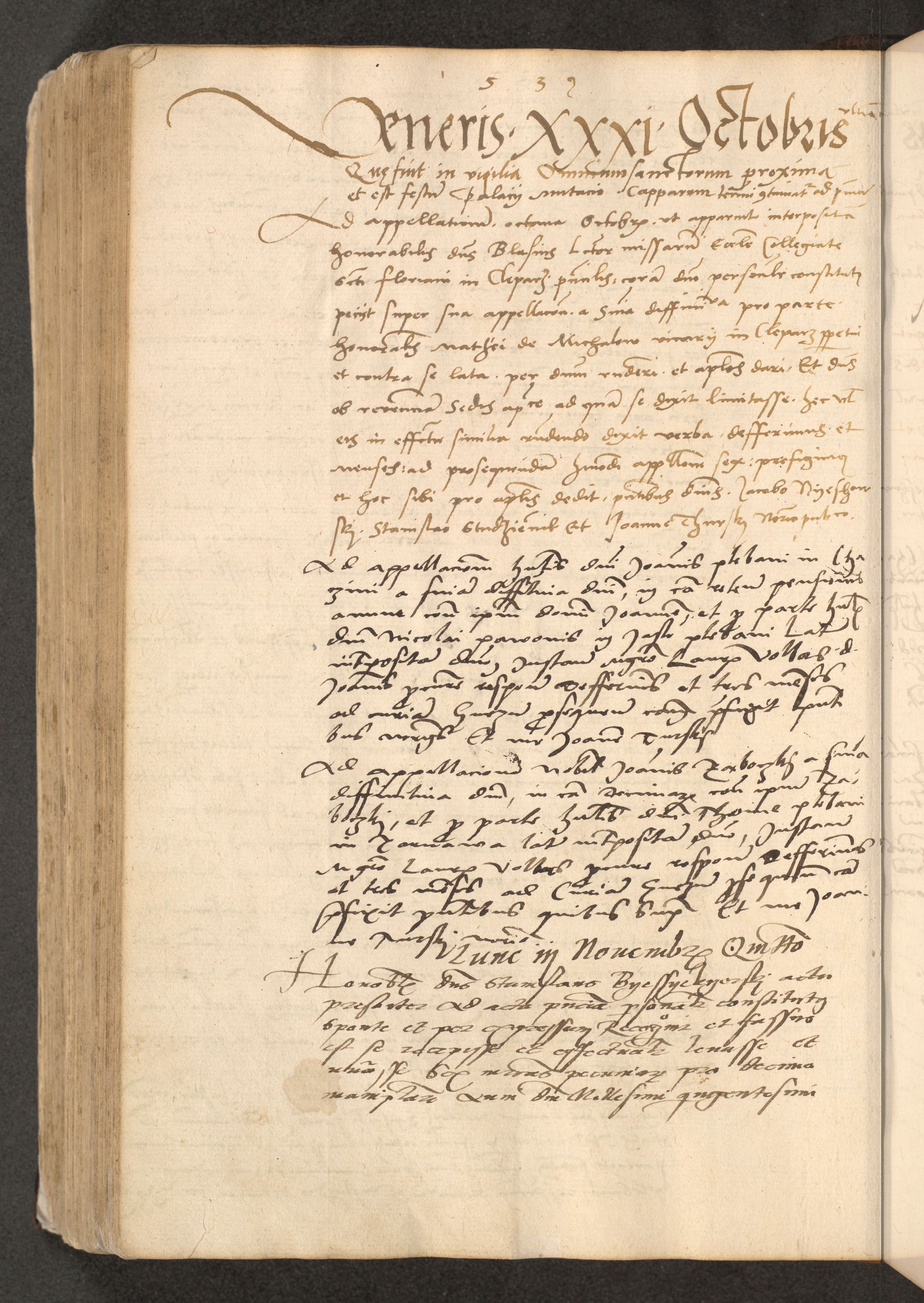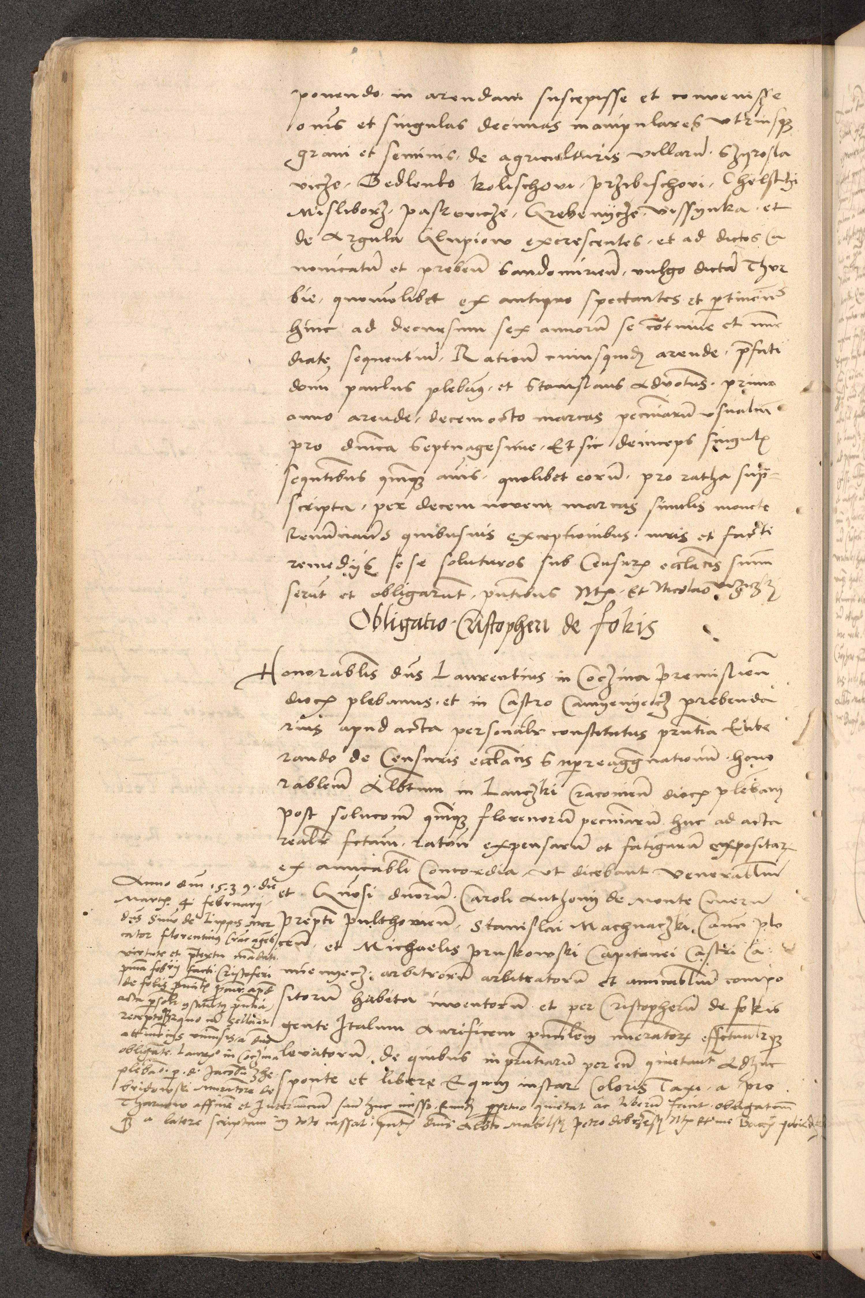Acta actorum causarum, sentenciarum et obligationum coram reverendo patre domino Thoma Roznowski canonico et reverendissimi in Christo patris et domini domini Patri Dei gratia Cracoviensis. Sabbato, 26 Octobris in ecclesiam suam solenniter recepti officialis generalis Cracoviensis dinita administratura, qua fungebatur post mortem reverendissimi olim felicis recordationis domini Joannis Choiecki episcopi Cracoviensis et Regni Polonie cancelarii anno presenti currenti videlicet 1538, die 11 Marcii Piotrcovie in comiciis celebratis circiter 23 horam defuncti sepulto corpore nona eiusdemque obsequiis X respective Aprilis peractis electo sub indictione XI, pontificatu vero sanctissimi in Christo patris et domini nostri domini Pauli divina providencia pape tercii foeliciter moderni, anno quarto, incepta felicibus auspiciis continuantur ordine processu infrascripto
