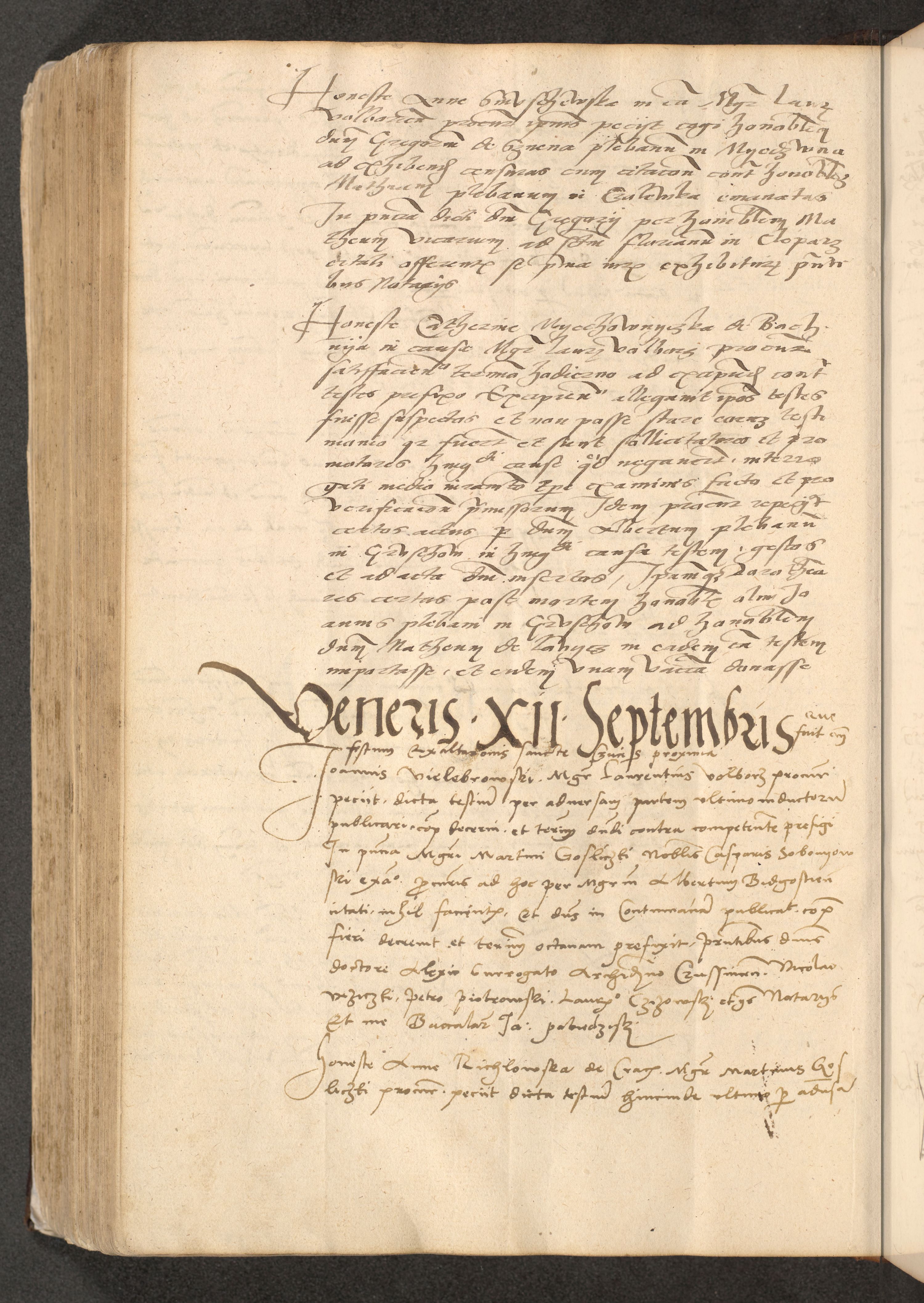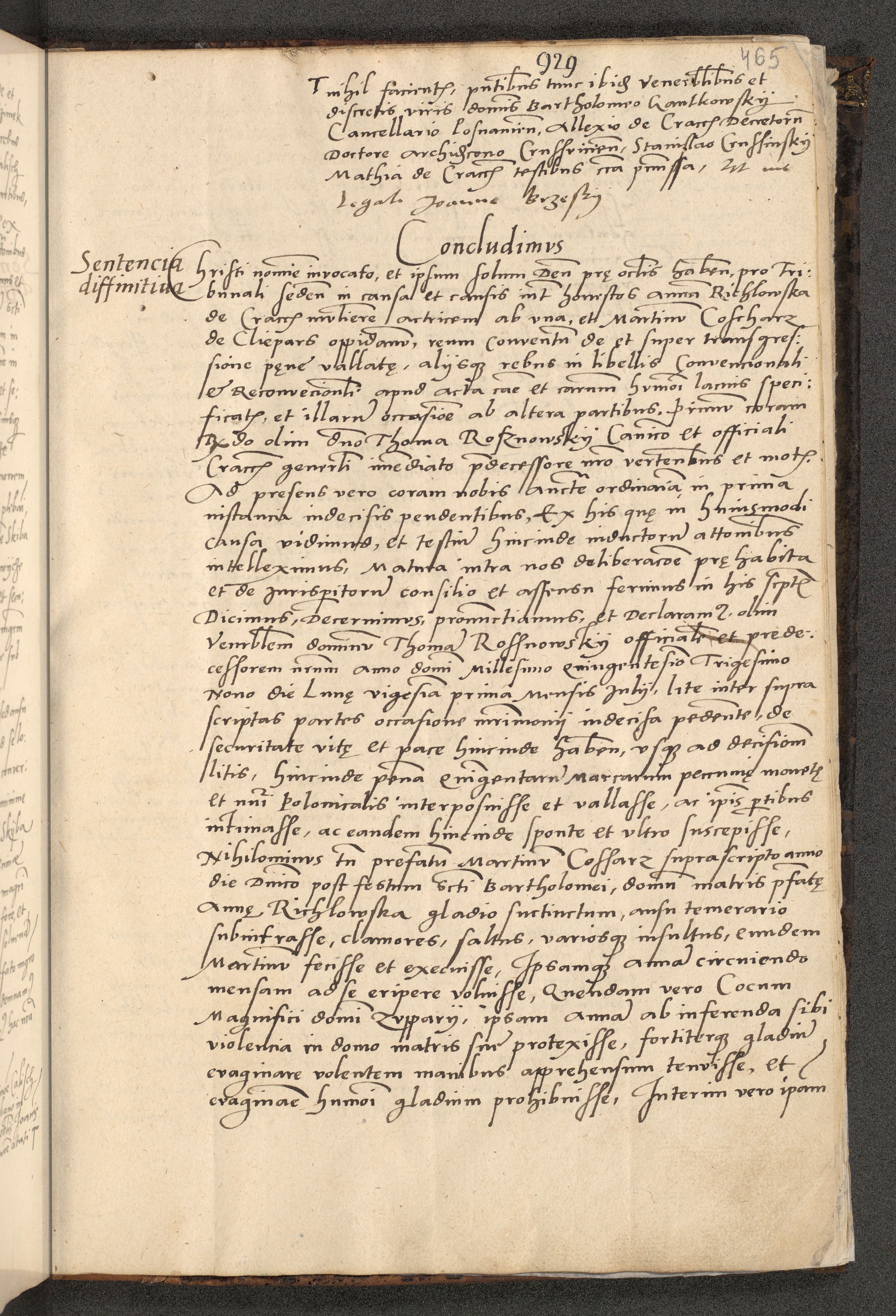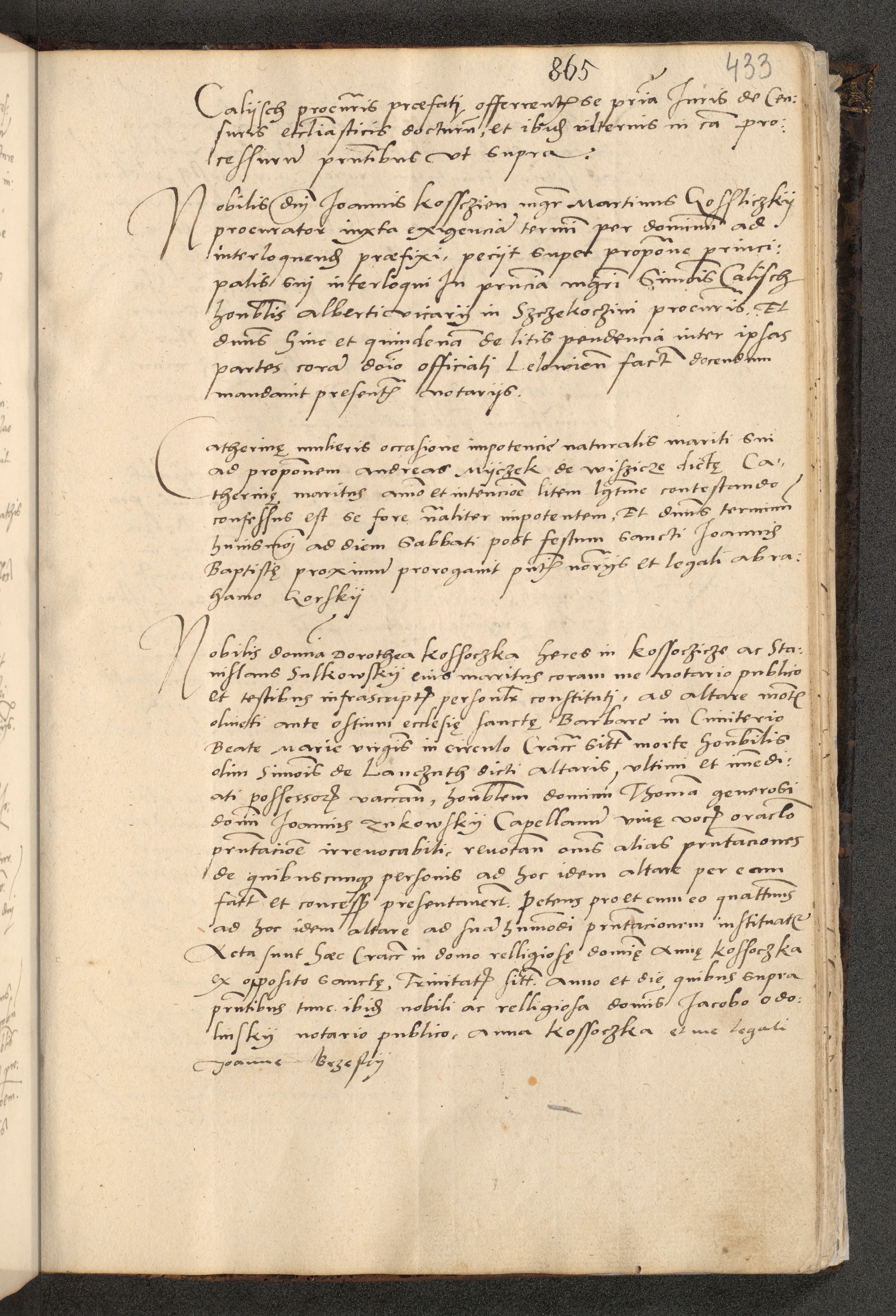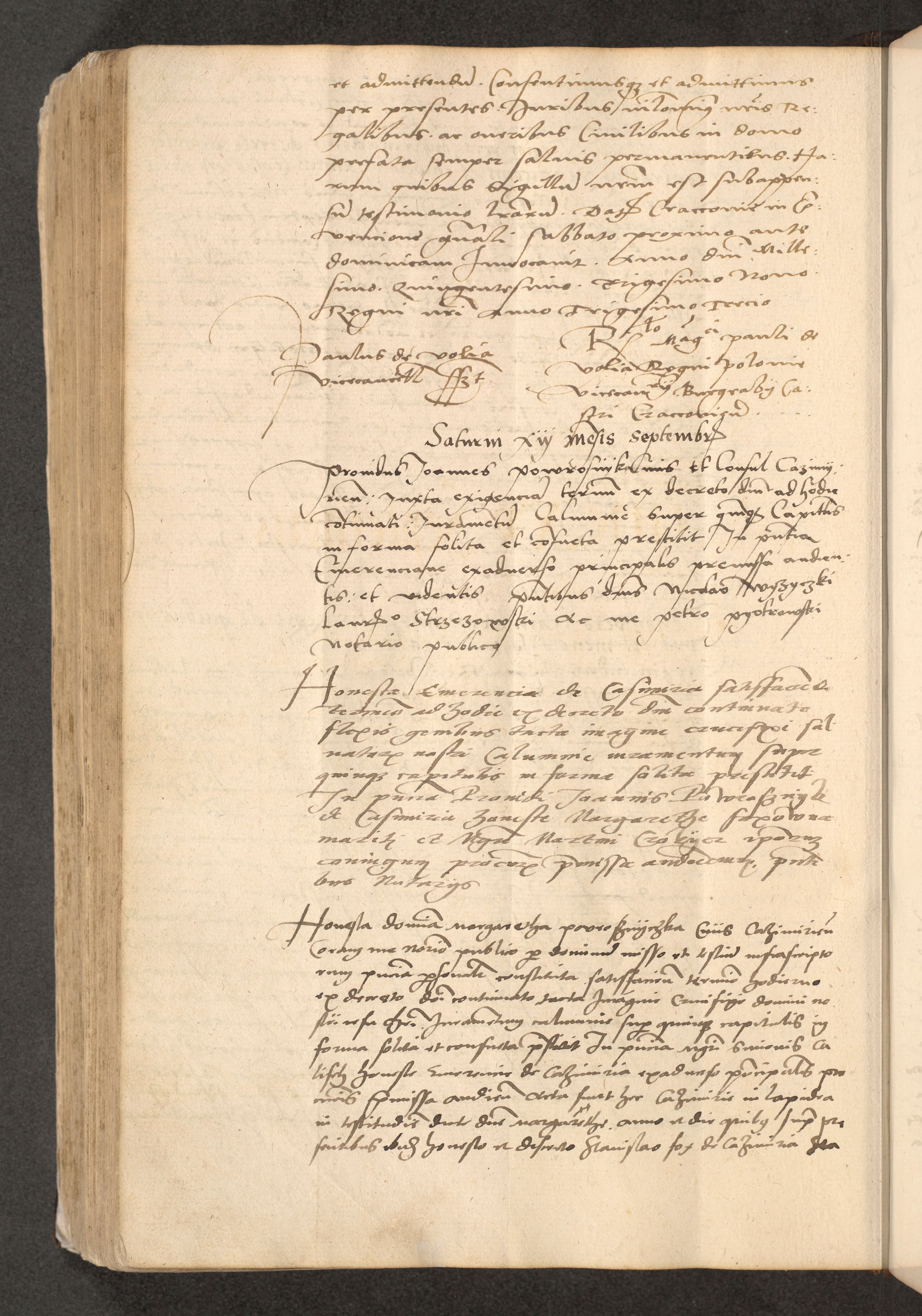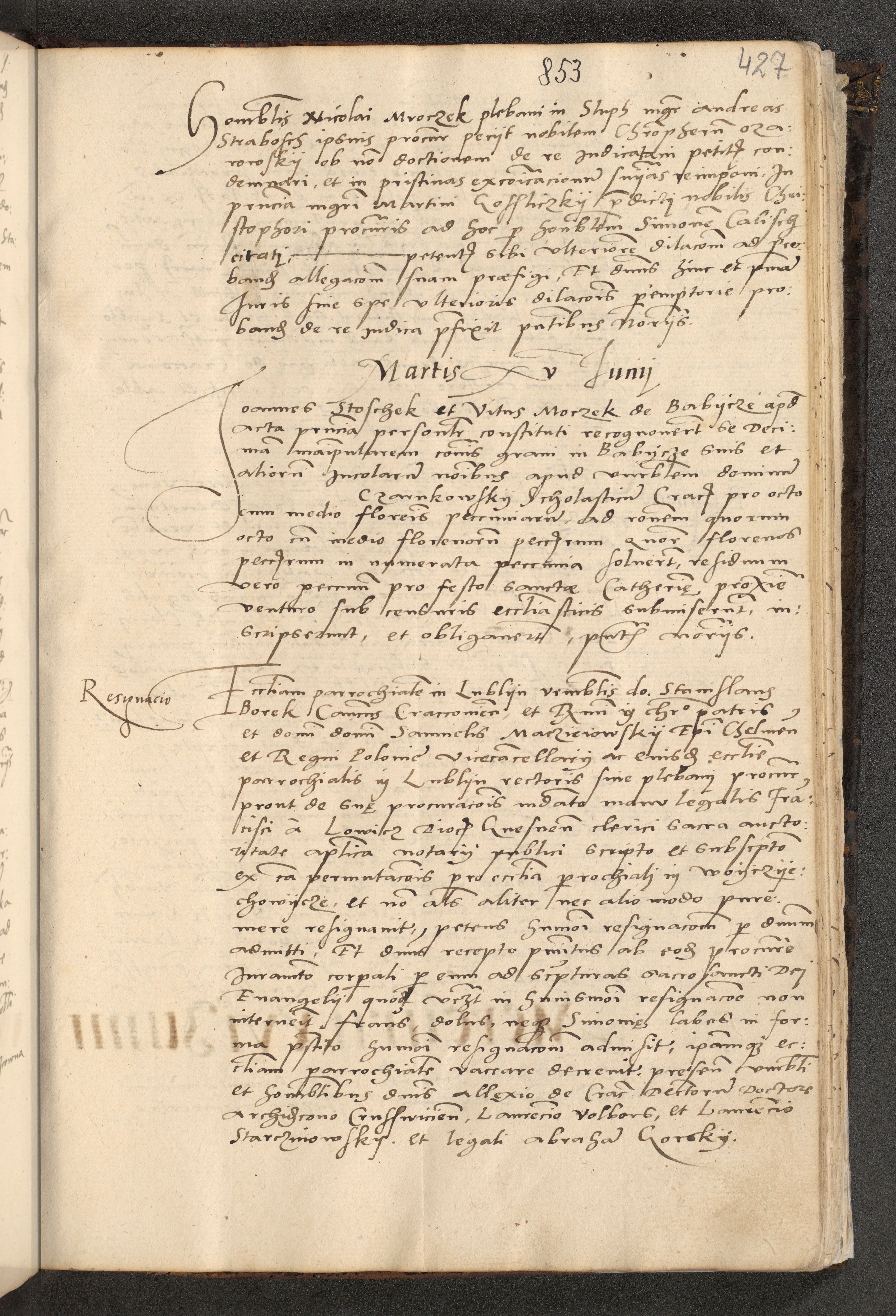 Acta actorum causarum, sentenciarum et obligationum coram reverendo patre domino Thoma Roznowski canonico et reverendissimi in Christo patris et domini domini Patri Dei gratia Cracoviensis. Sabbato, 26 Octobris in ecclesiam suam solenniter recepti officialis generalis Cracoviensis dinita administratura, qua fungebatur post mortem reverendissimi olim felicis recordationis domini Joannis Choiecki episcopi Cracoviensis et Regni Polonie cancelarii anno presenti currenti videlicet 1538, die 11 Marcii Piotrcovie in comiciis celebratis circiter 23 horam defuncti sepulto corpore nona eiusdemque obsequiis X respective Aprilis peractis electo sub indictione XI, pontificatu vero sanctissimi in Christo patris et domini nostri domini Pauli divina providencia pape tercii foeliciter moderni, anno quarto, incepta felicibus auspiciis continuantur ordine processu infrascripto