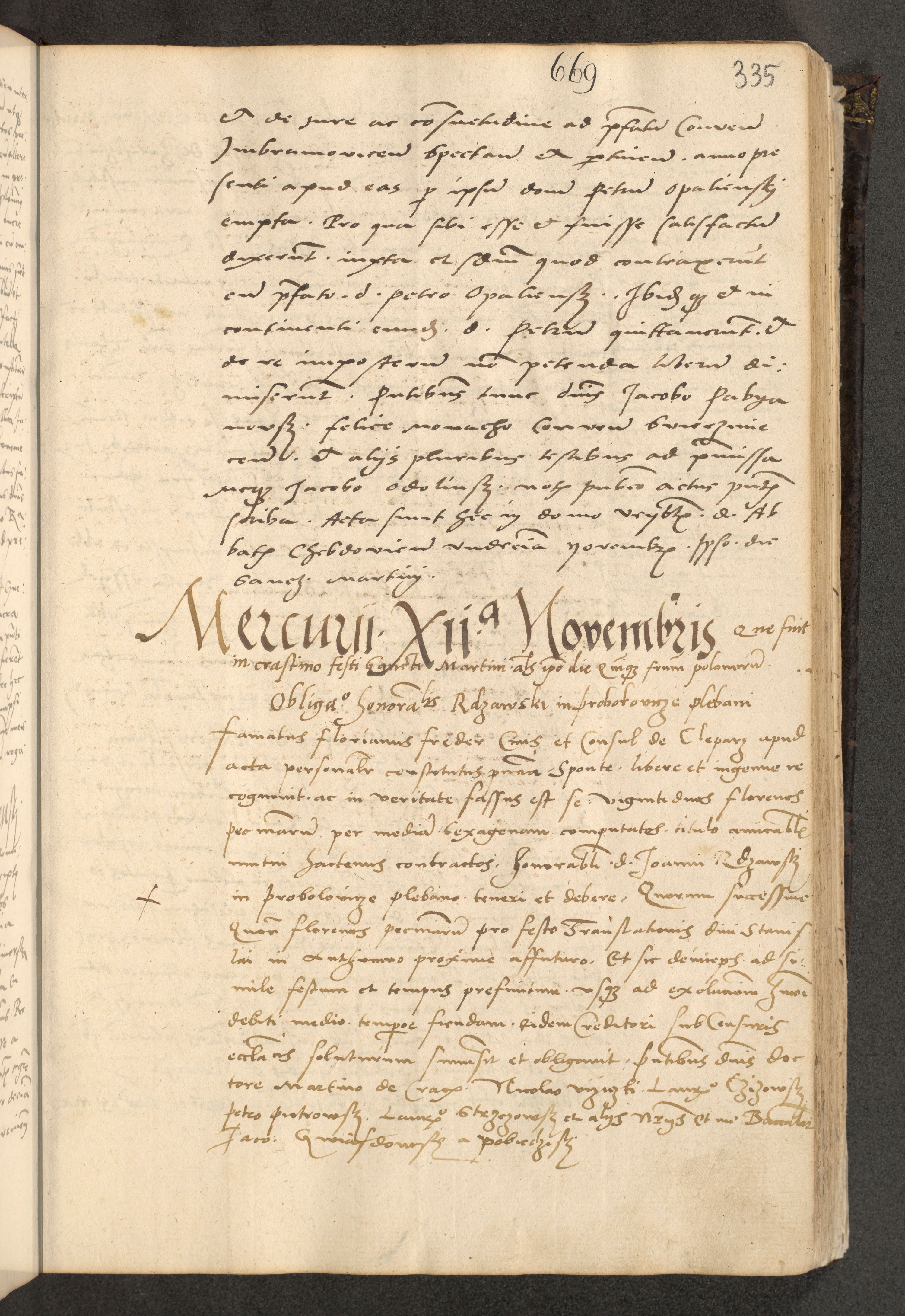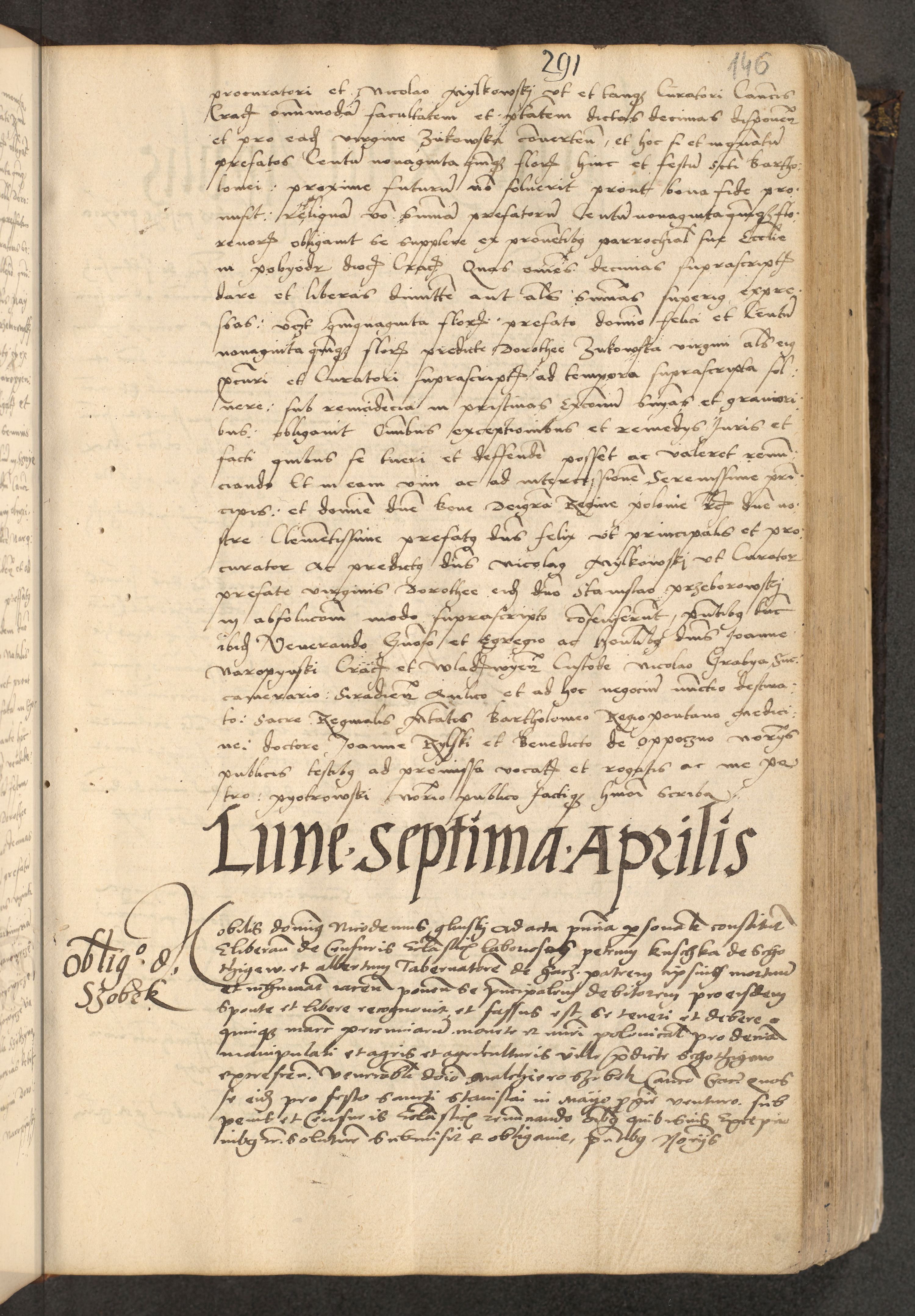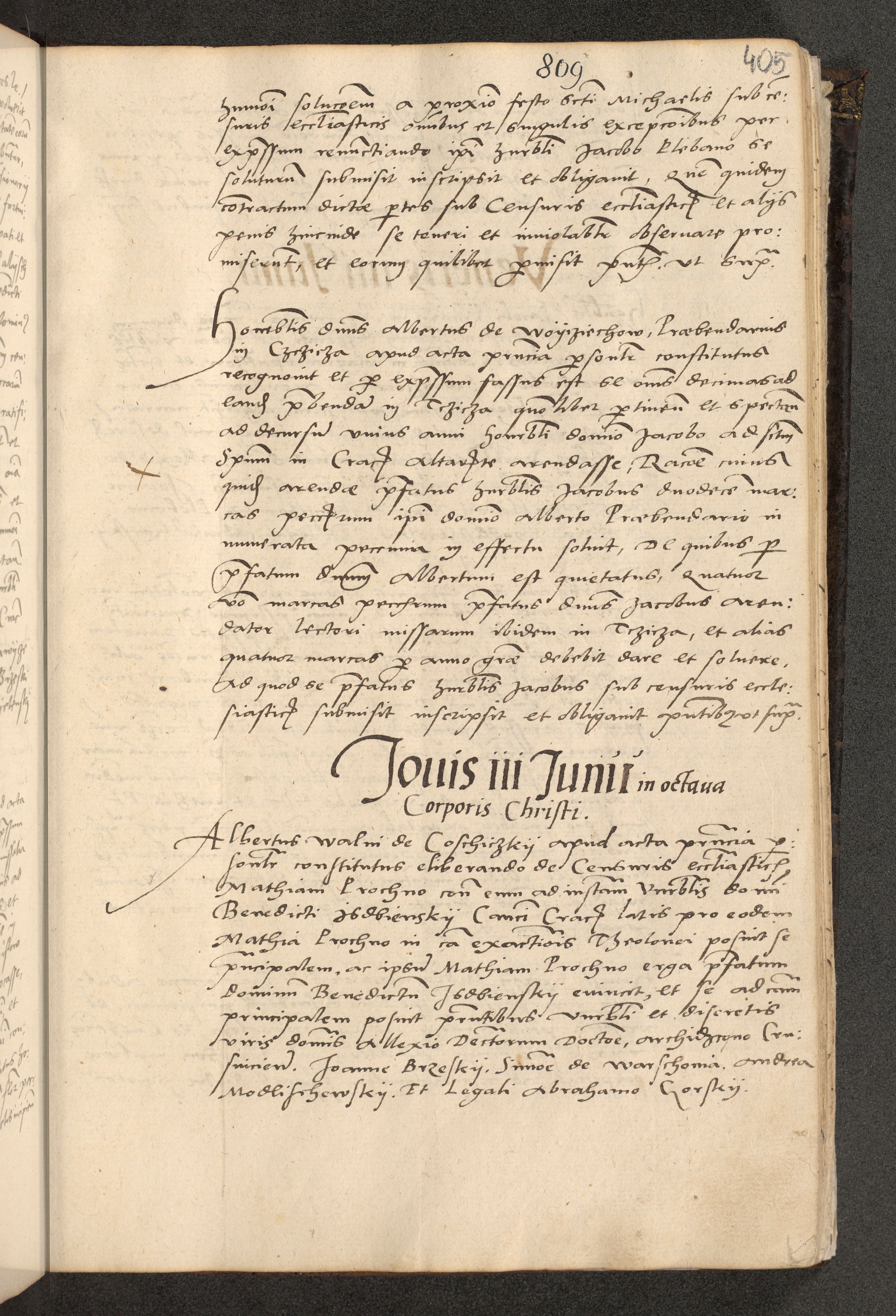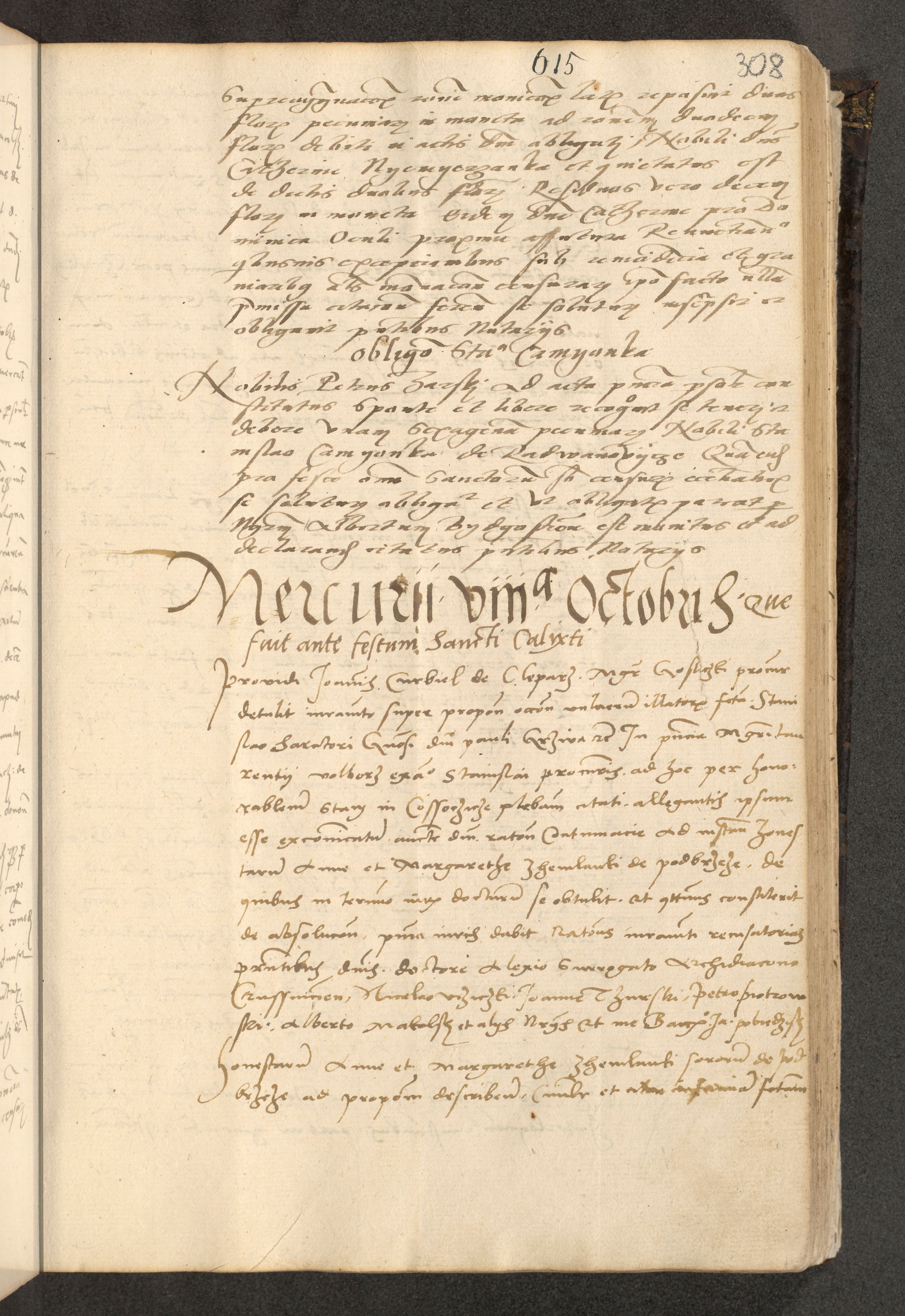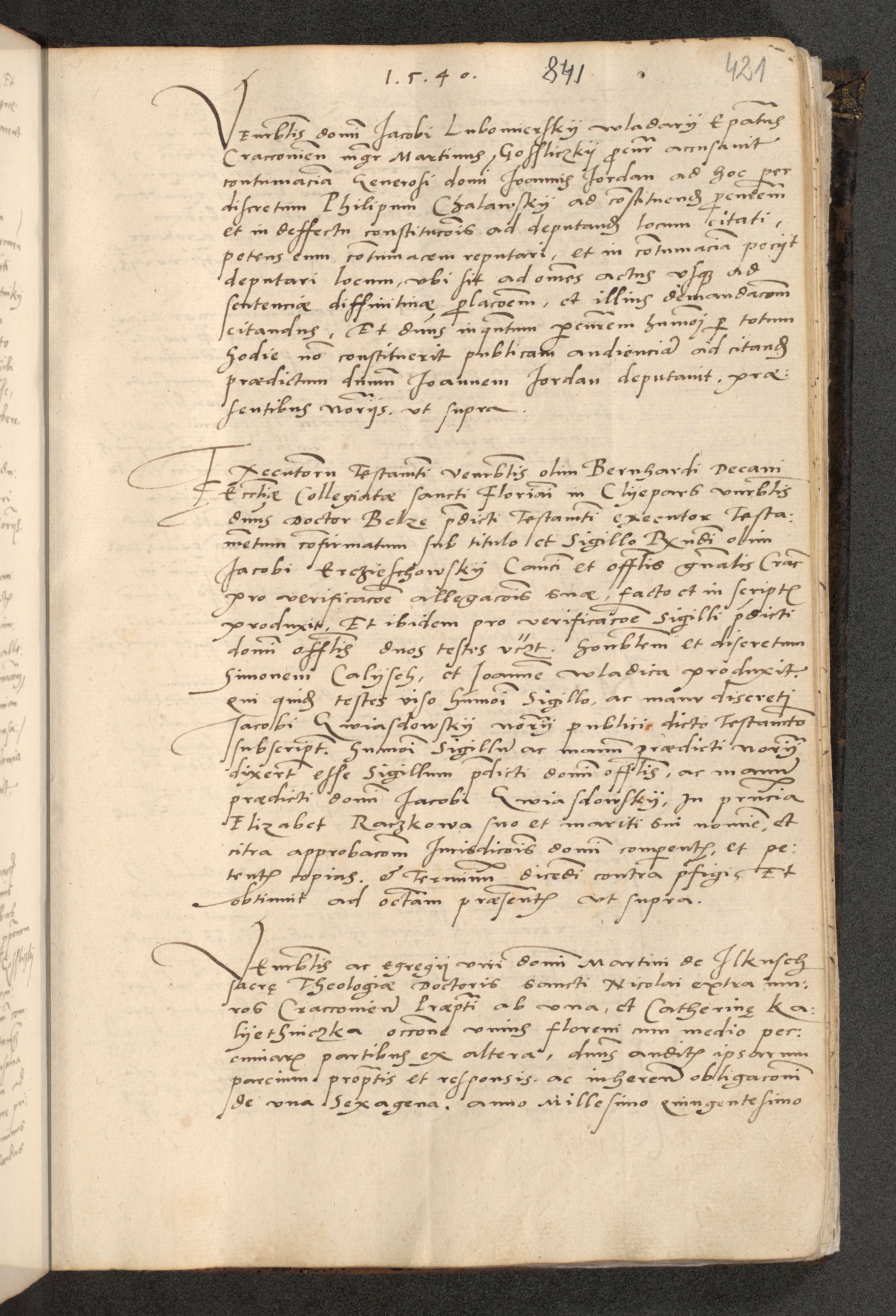 Acta actorum causarum, sentenciarum et obligationum coram reverendo patre domino Thoma Roznowski canonico et reverendissimi in Christo patris et domini domini Patri Dei gratia Cracoviensis. Sabbato, 26 Octobris in ecclesiam suam solenniter recepti officialis generalis Cracoviensis dinita administratura, qua fungebatur post mortem reverendissimi olim felicis recordationis domini Joannis Choiecki episcopi Cracoviensis et Regni Polonie cancelarii anno presenti currenti videlicet 1538, die 11 Marcii Piotrcovie in comiciis celebratis circiter 23 horam defuncti sepulto corpore nona eiusdemque obsequiis X respective Aprilis peractis electo sub indictione XI, pontificatu vero sanctissimi in Christo patris et domini nostri domini Pauli divina providencia pape tercii foeliciter moderni, anno quarto, incepta felicibus auspiciis continuantur ordine processu infrascripto