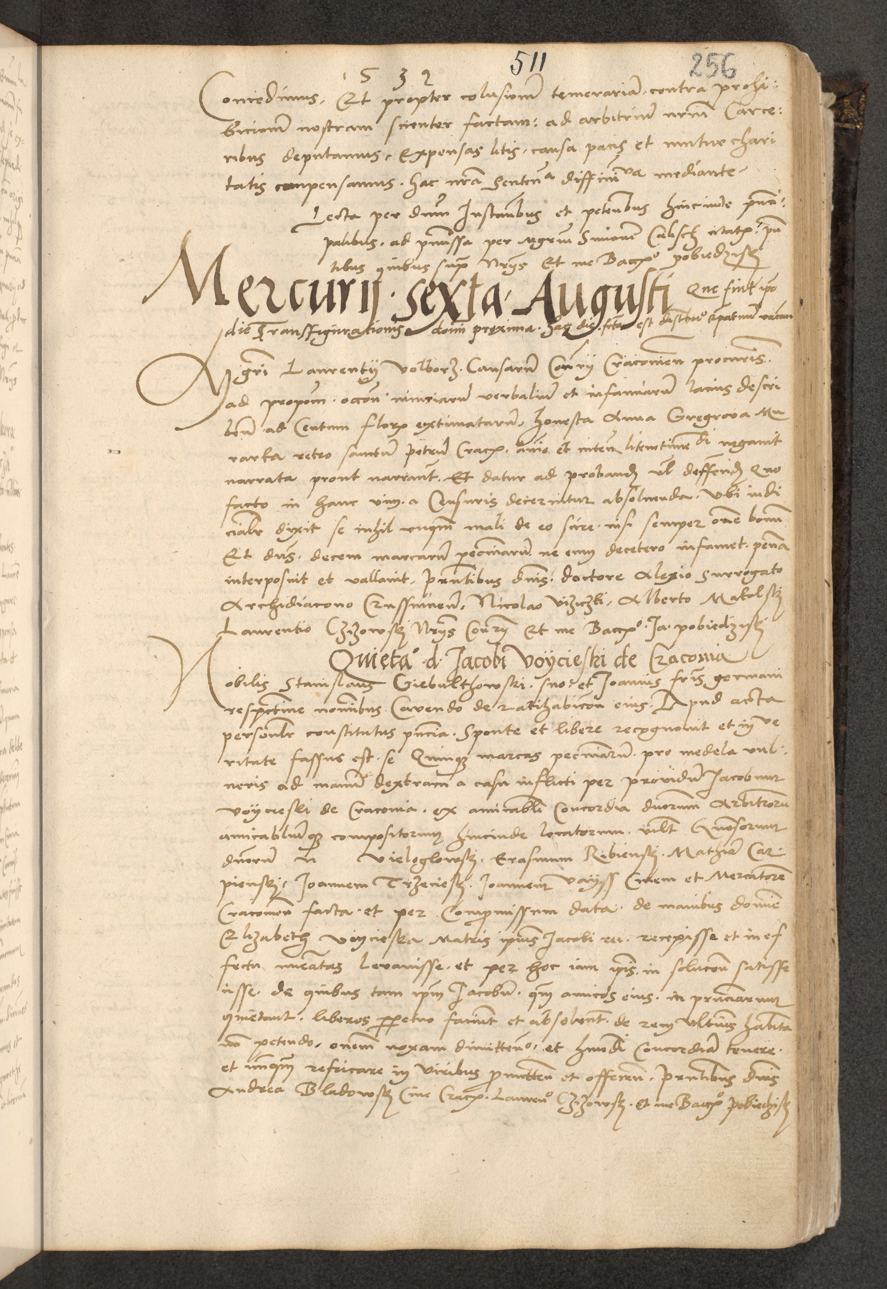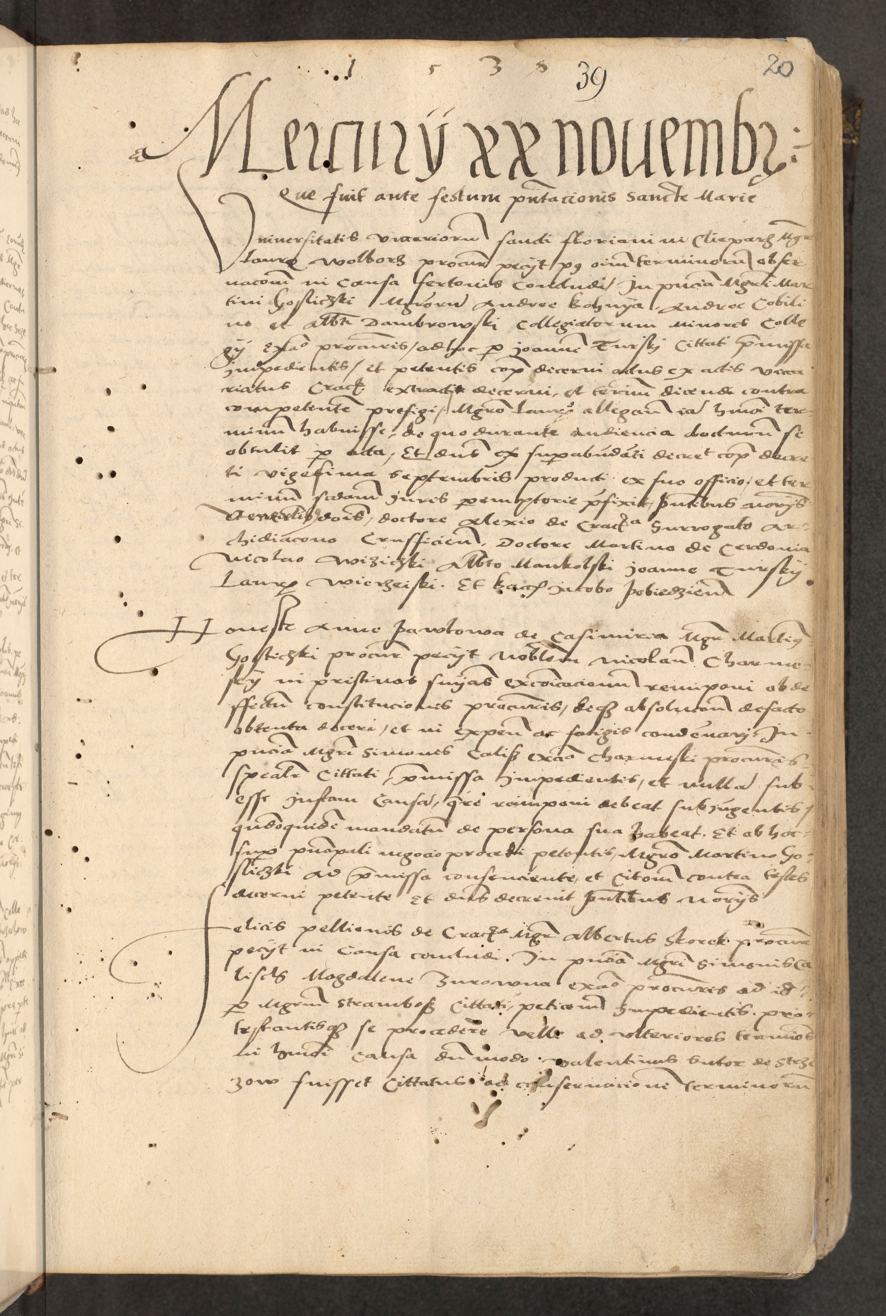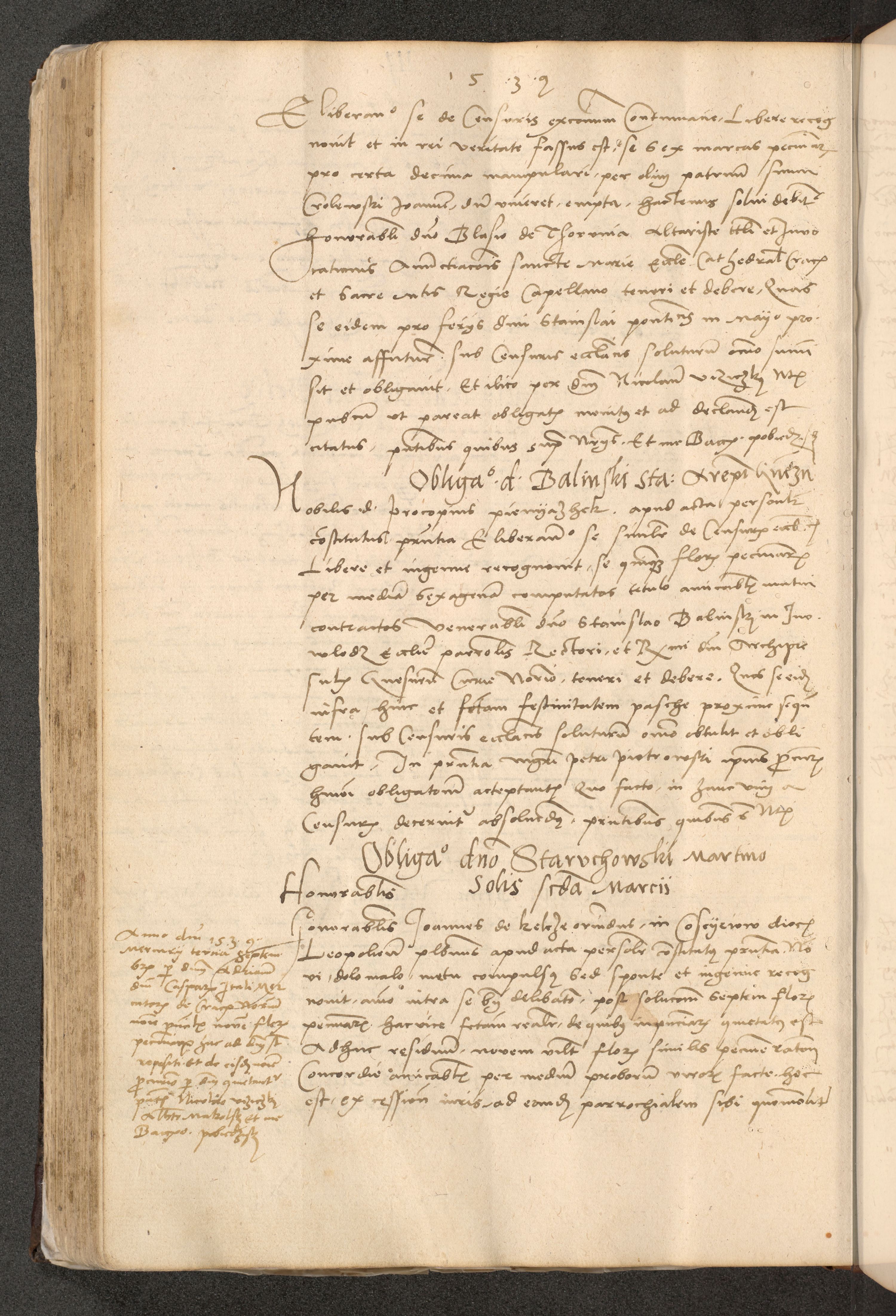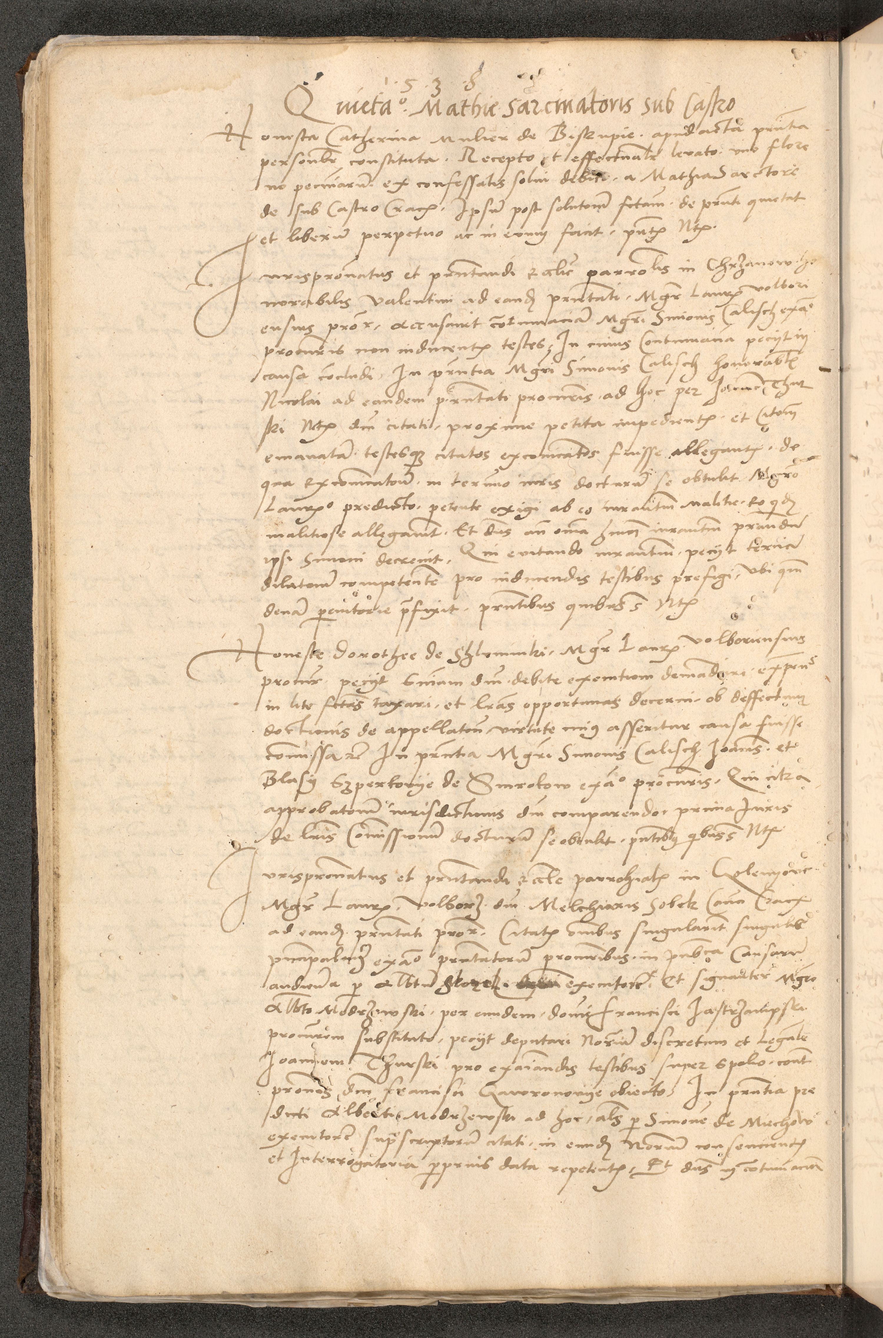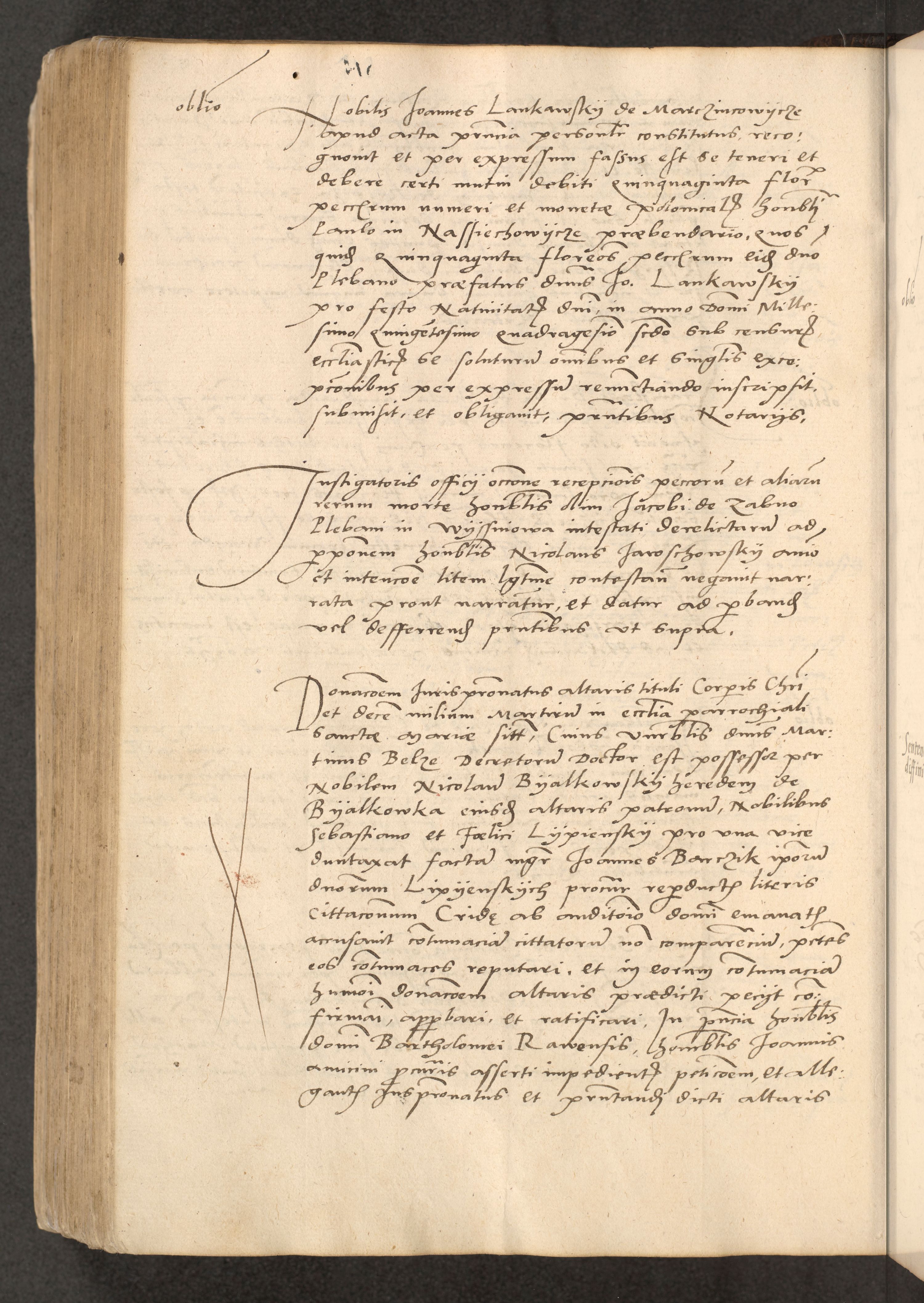 Acta actorum causarum, sentenciarum et obligationum coram reverendo patre domino Thoma Roznowski canonico et reverendissimi in Christo patris et domini domini Patri Dei gratia Cracoviensis. Sabbato, 26 Octobris in ecclesiam suam solenniter recepti officialis generalis Cracoviensis dinita administratura, qua fungebatur post mortem reverendissimi olim felicis recordationis domini Joannis Choiecki episcopi Cracoviensis et Regni Polonie cancelarii anno presenti currenti videlicet 1538, die 11 Marcii Piotrcovie in comiciis celebratis circiter 23 horam defuncti sepulto corpore nona eiusdemque obsequiis X respective Aprilis peractis electo sub indictione XI, pontificatu vero sanctissimi in Christo patris et domini nostri domini Pauli divina providencia pape tercii foeliciter moderni, anno quarto, incepta felicibus auspiciis continuantur ordine processu infrascripto