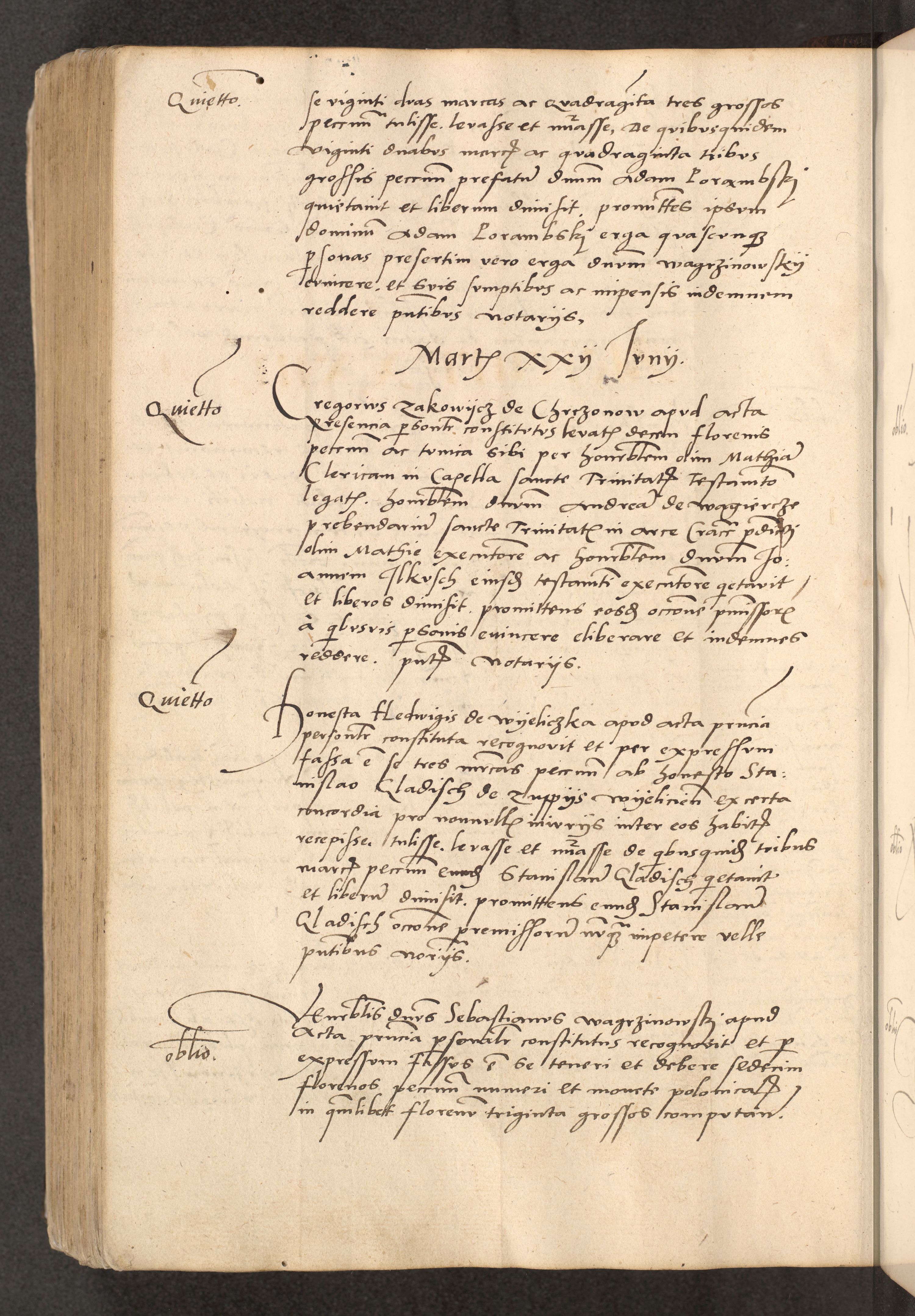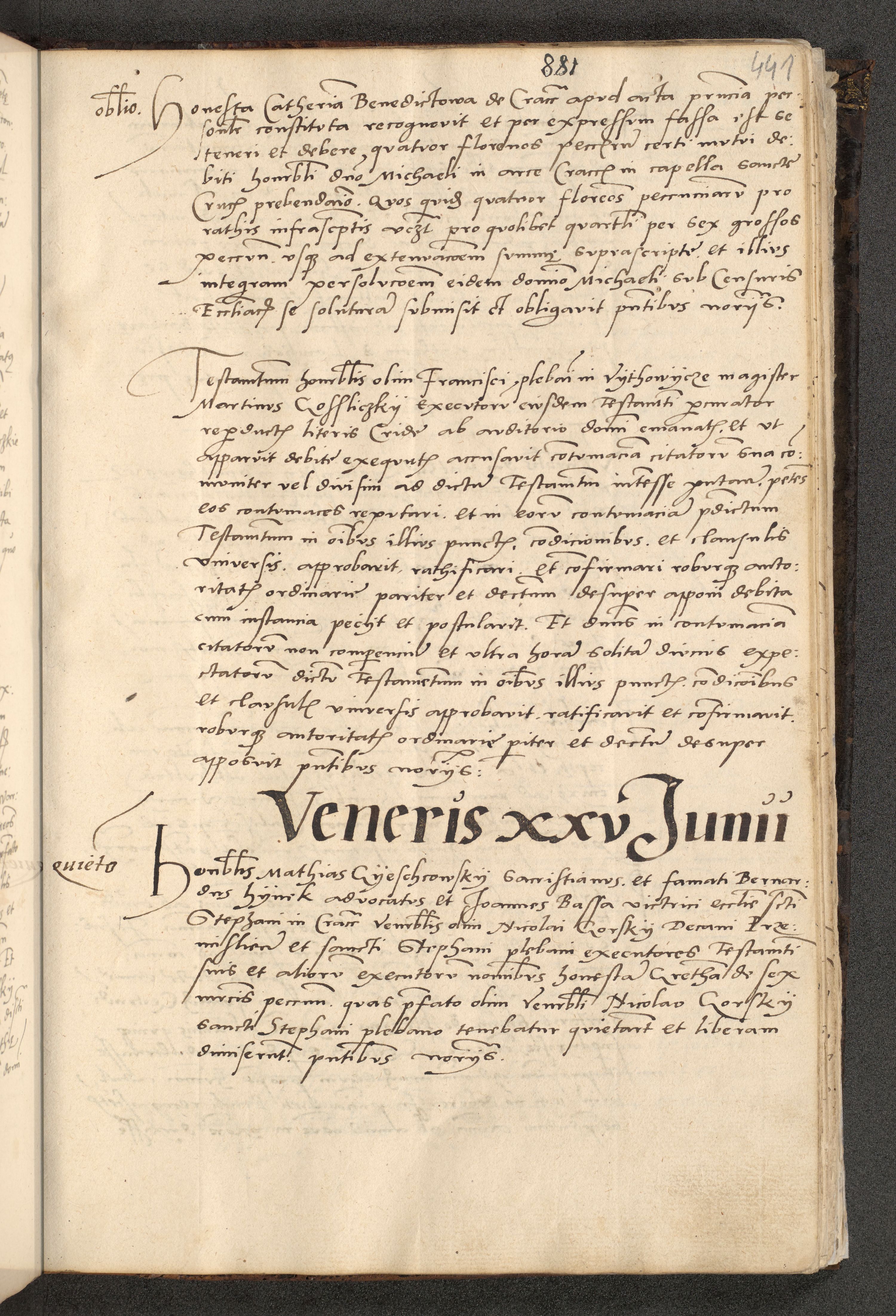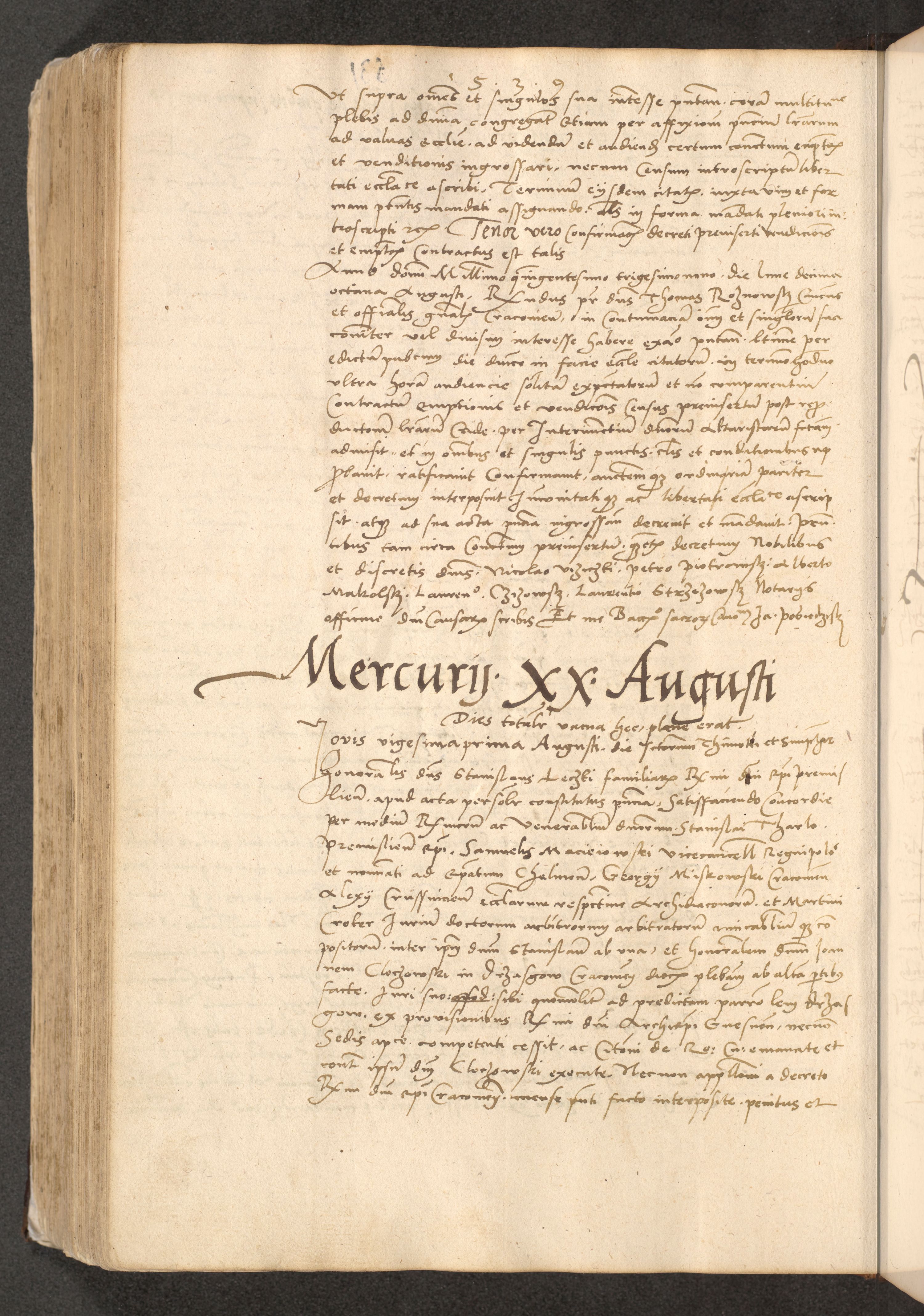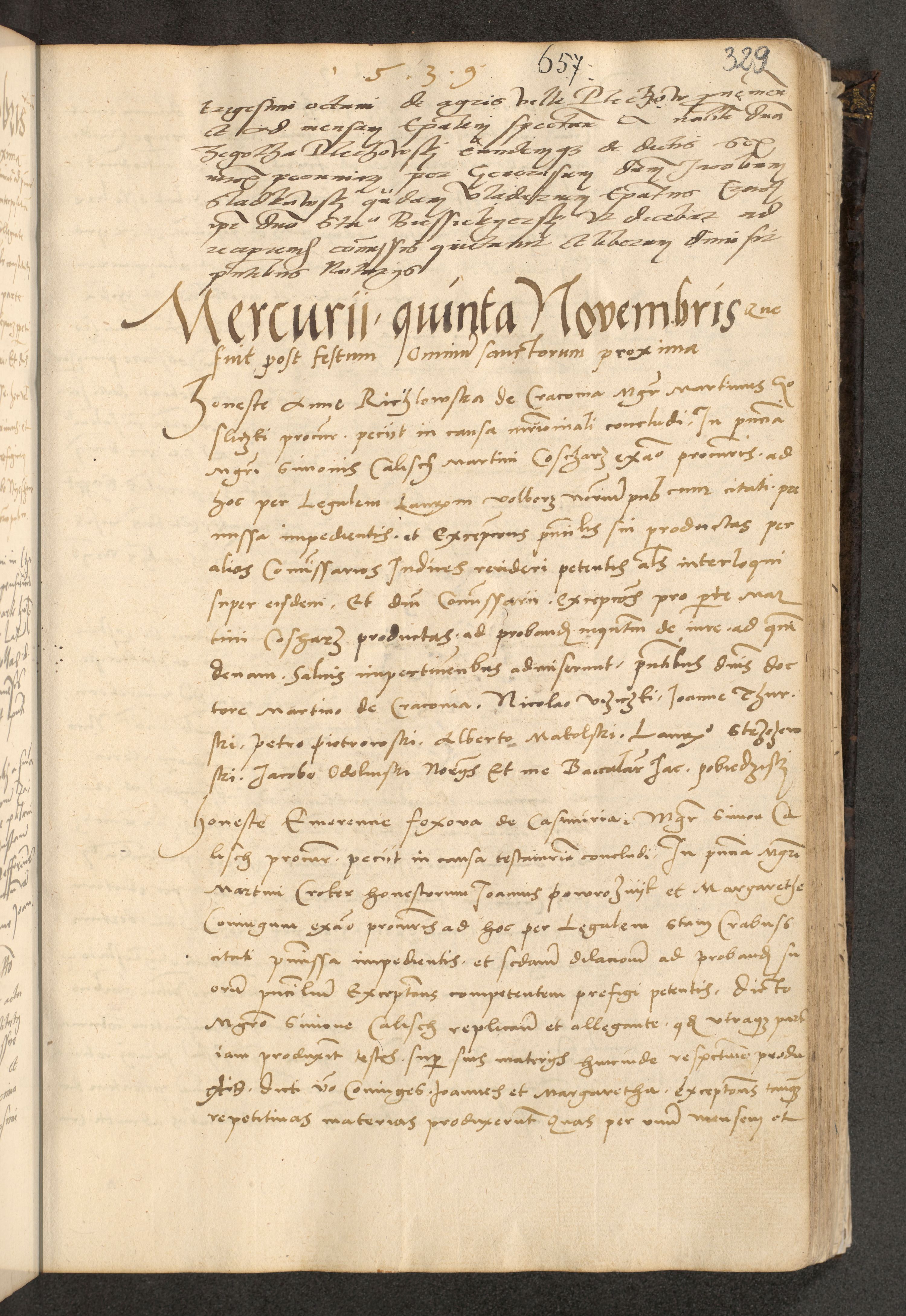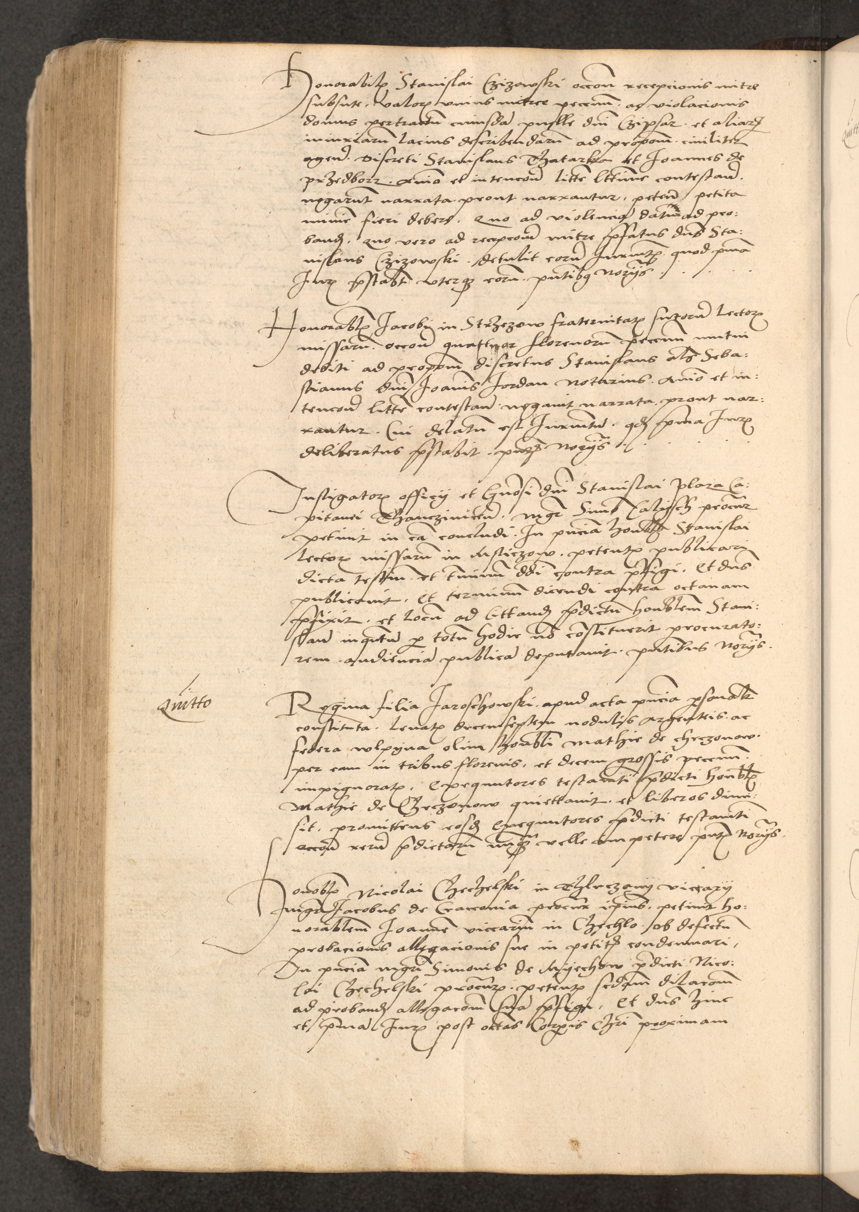 Acta actorum causarum, sentenciarum et obligationum coram reverendo patre domino Thoma Roznowski canonico et reverendissimi in Christo patris et domini domini Patri Dei gratia Cracoviensis. Sabbato, 26 Octobris in ecclesiam suam solenniter recepti officialis generalis Cracoviensis dinita administratura, qua fungebatur post mortem reverendissimi olim felicis recordationis domini Joannis Choiecki episcopi Cracoviensis et Regni Polonie cancelarii anno presenti currenti videlicet 1538, die 11 Marcii Piotrcovie in comiciis celebratis circiter 23 horam defuncti sepulto corpore nona eiusdemque obsequiis X respective Aprilis peractis electo sub indictione XI, pontificatu vero sanctissimi in Christo patris et domini nostri domini Pauli divina providencia pape tercii foeliciter moderni, anno quarto, incepta felicibus auspiciis continuantur ordine processu infrascripto