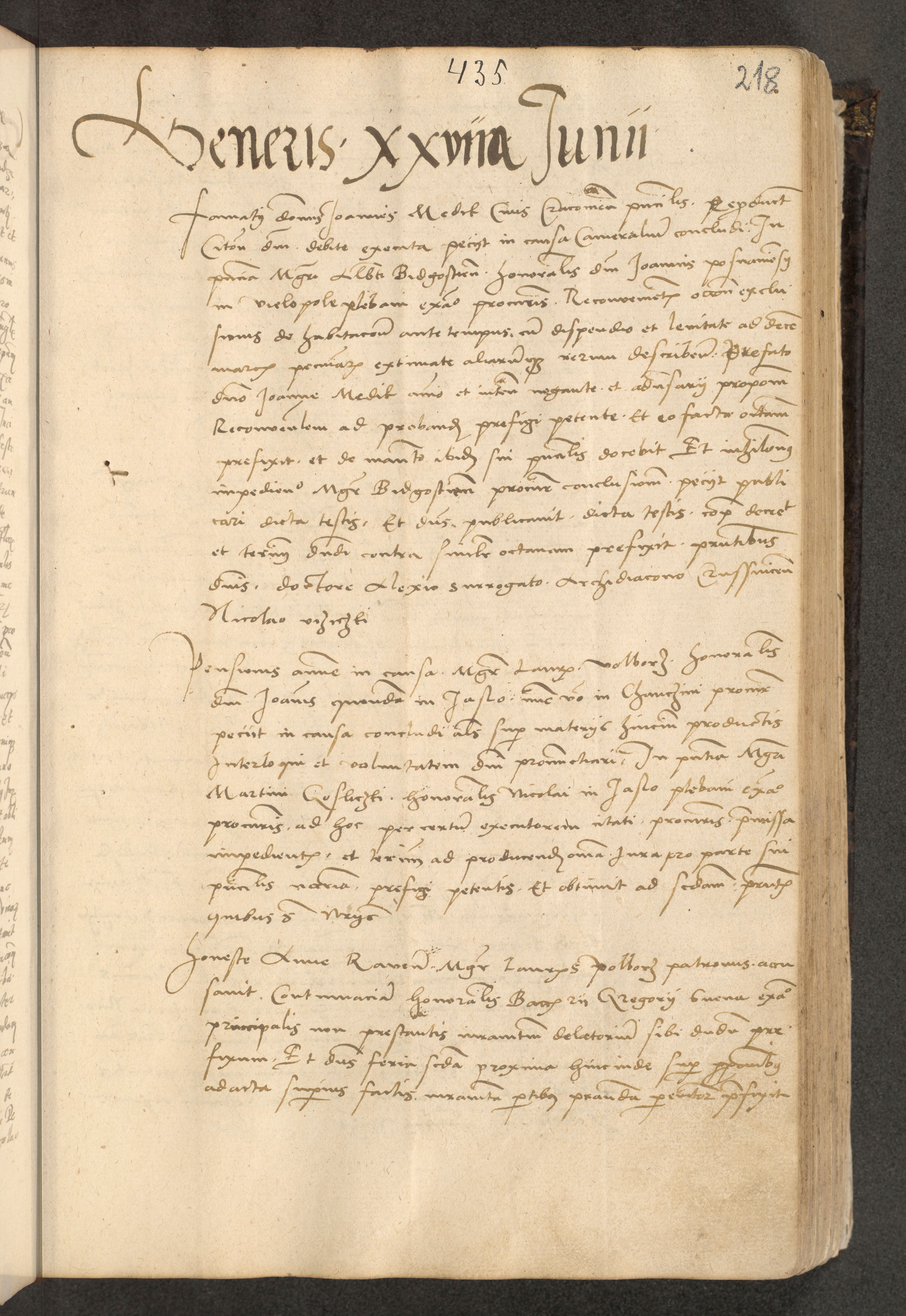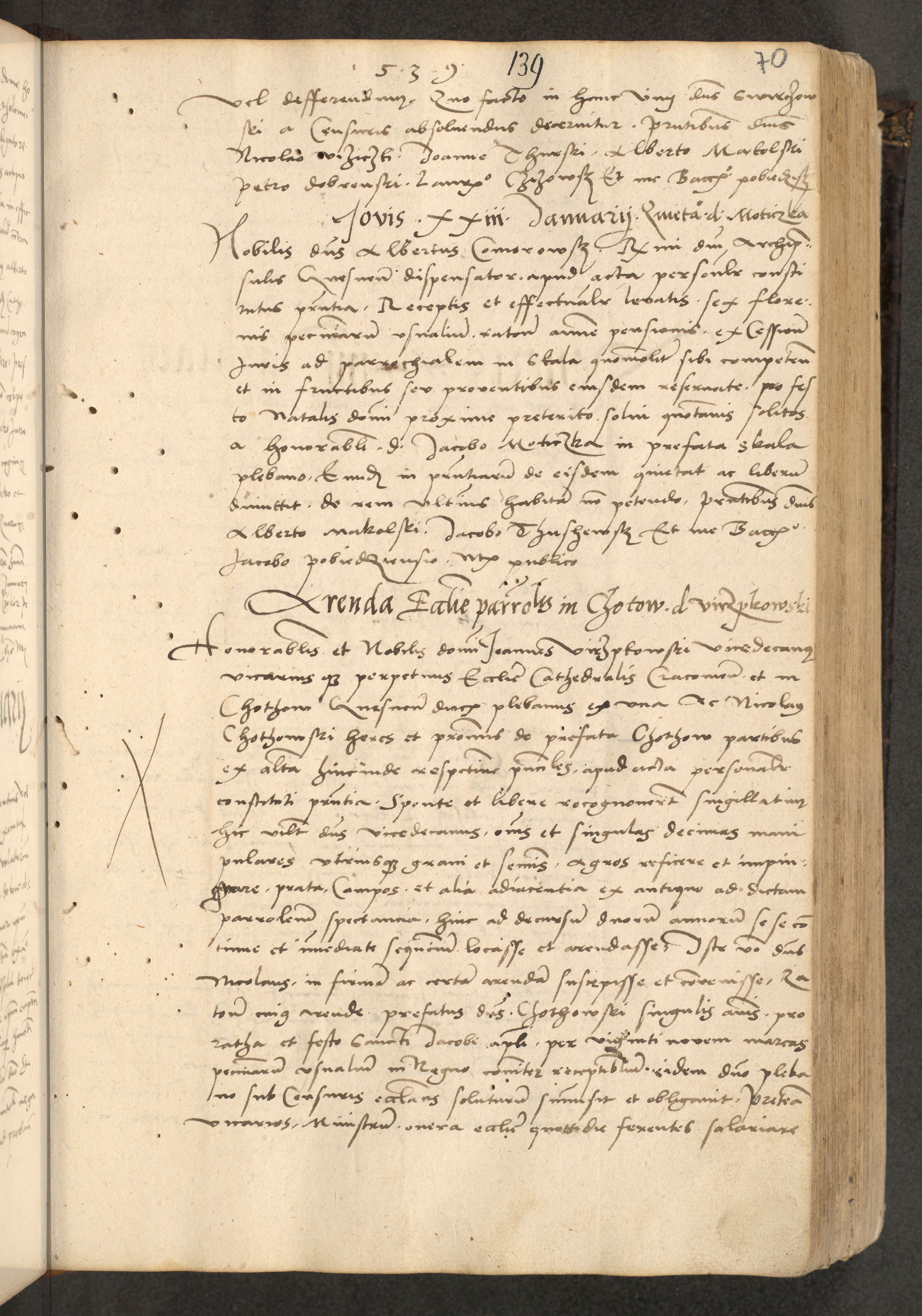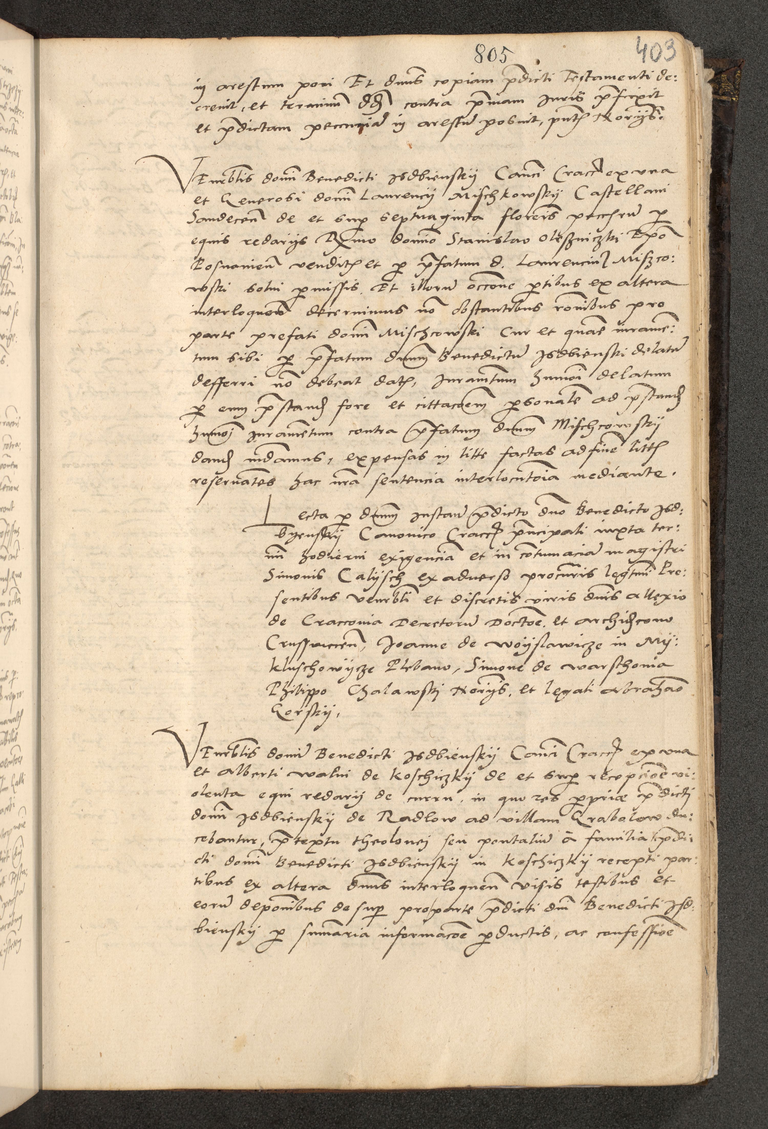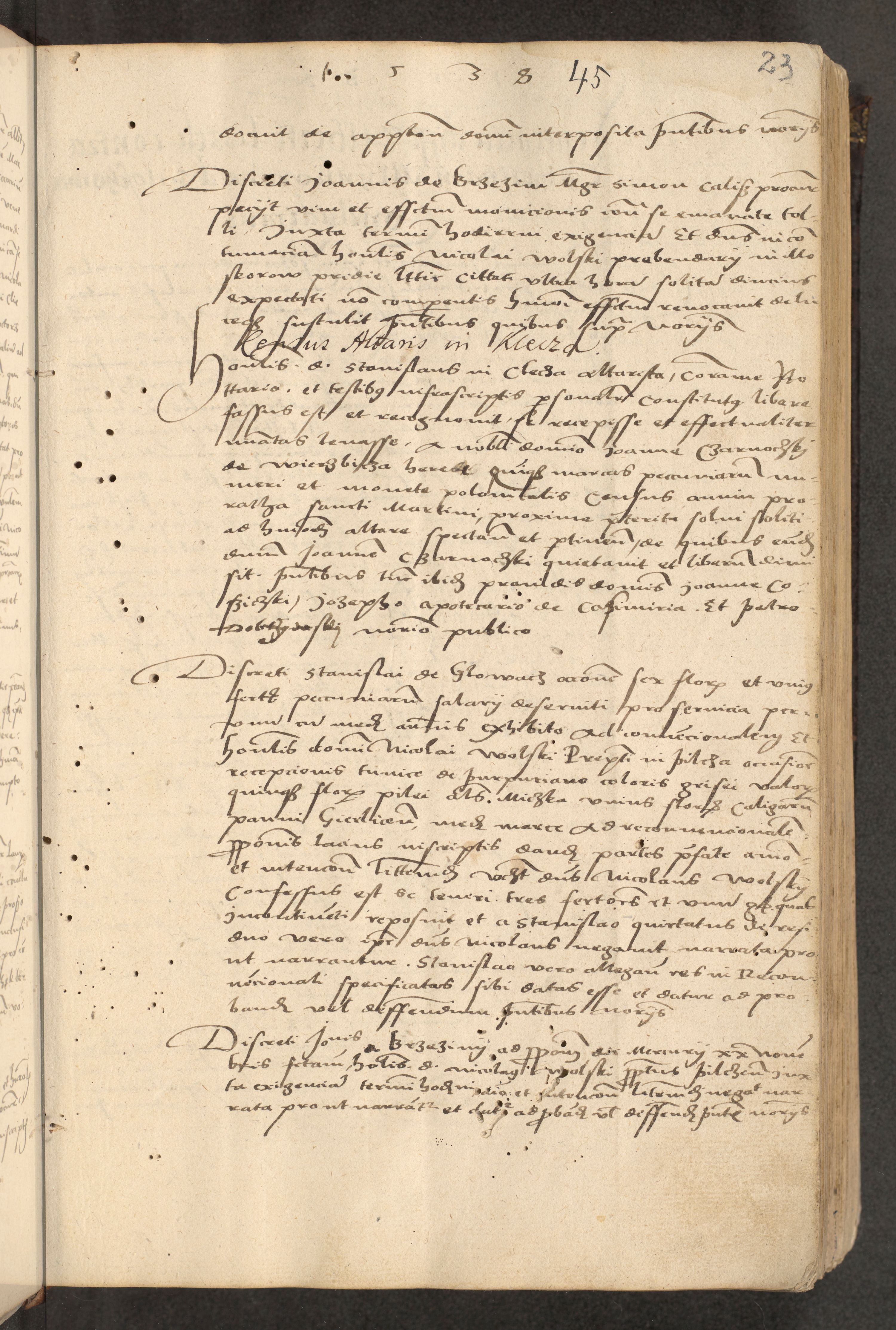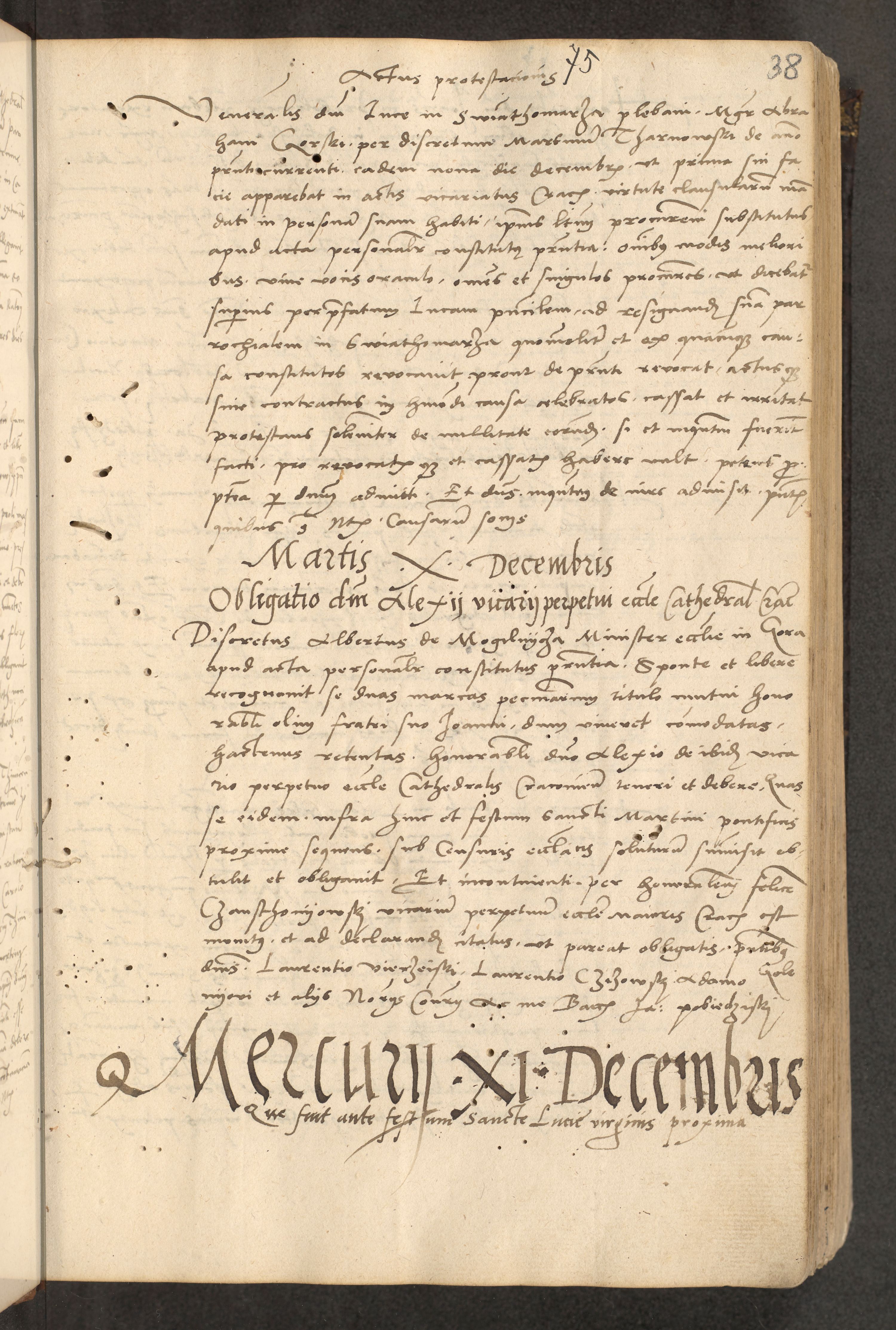 Acta actorum causarum, sentenciarum et obligationum coram reverendo patre domino Thoma Roznowski canonico et reverendissimi in Christo patris et domini domini Patri Dei gratia Cracoviensis. Sabbato, 26 Octobris in ecclesiam suam solenniter recepti officialis generalis Cracoviensis dinita administratura, qua fungebatur post mortem reverendissimi olim felicis recordationis domini Joannis Choiecki episcopi Cracoviensis et Regni Polonie cancelarii anno presenti currenti videlicet 1538, die 11 Marcii Piotrcovie in comiciis celebratis circiter 23 horam defuncti sepulto corpore nona eiusdemque obsequiis X respective Aprilis peractis electo sub indictione XI, pontificatu vero sanctissimi in Christo patris et domini nostri domini Pauli divina providencia pape tercii foeliciter moderni, anno quarto, incepta felicibus auspiciis continuantur ordine processu infrascripto