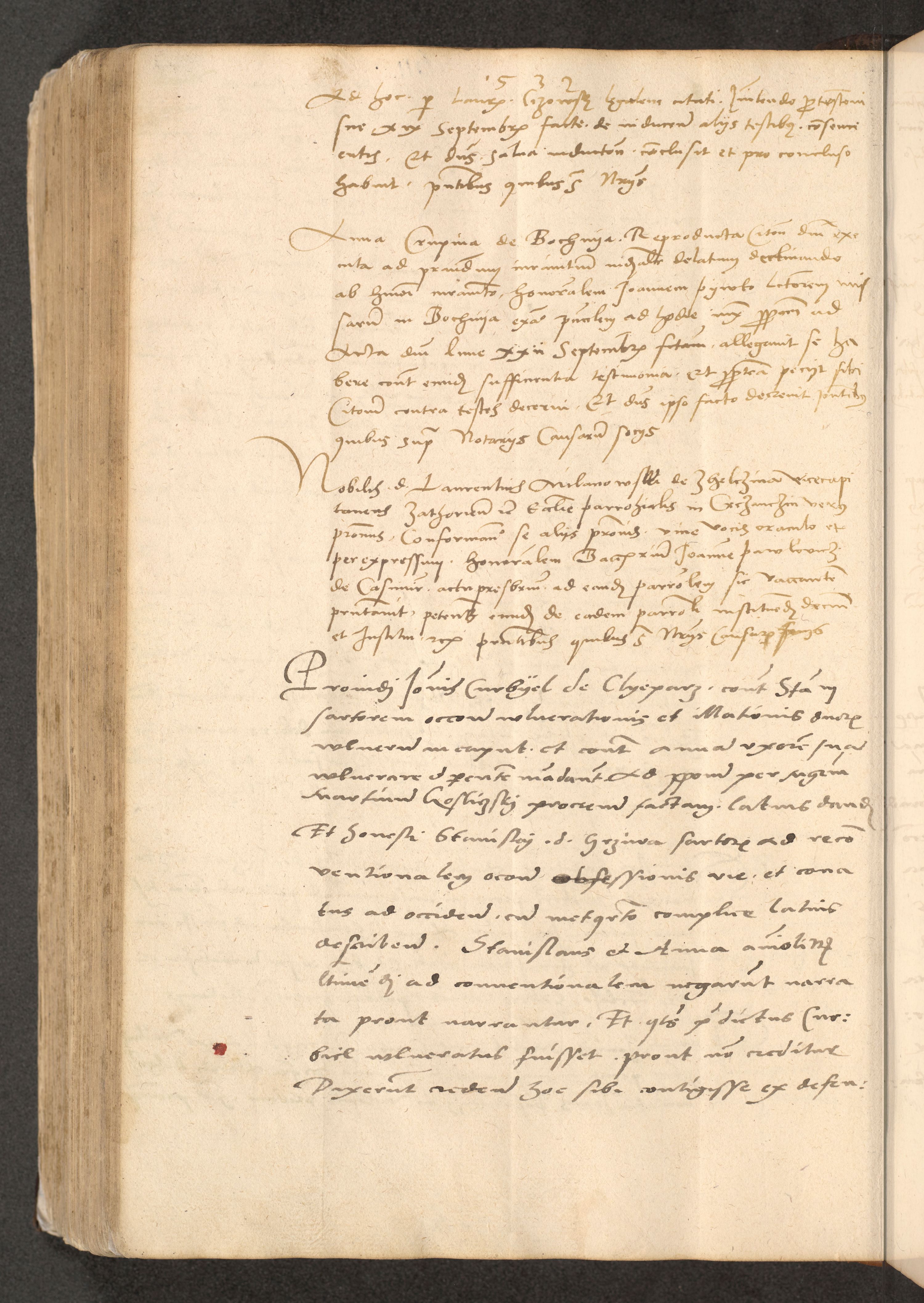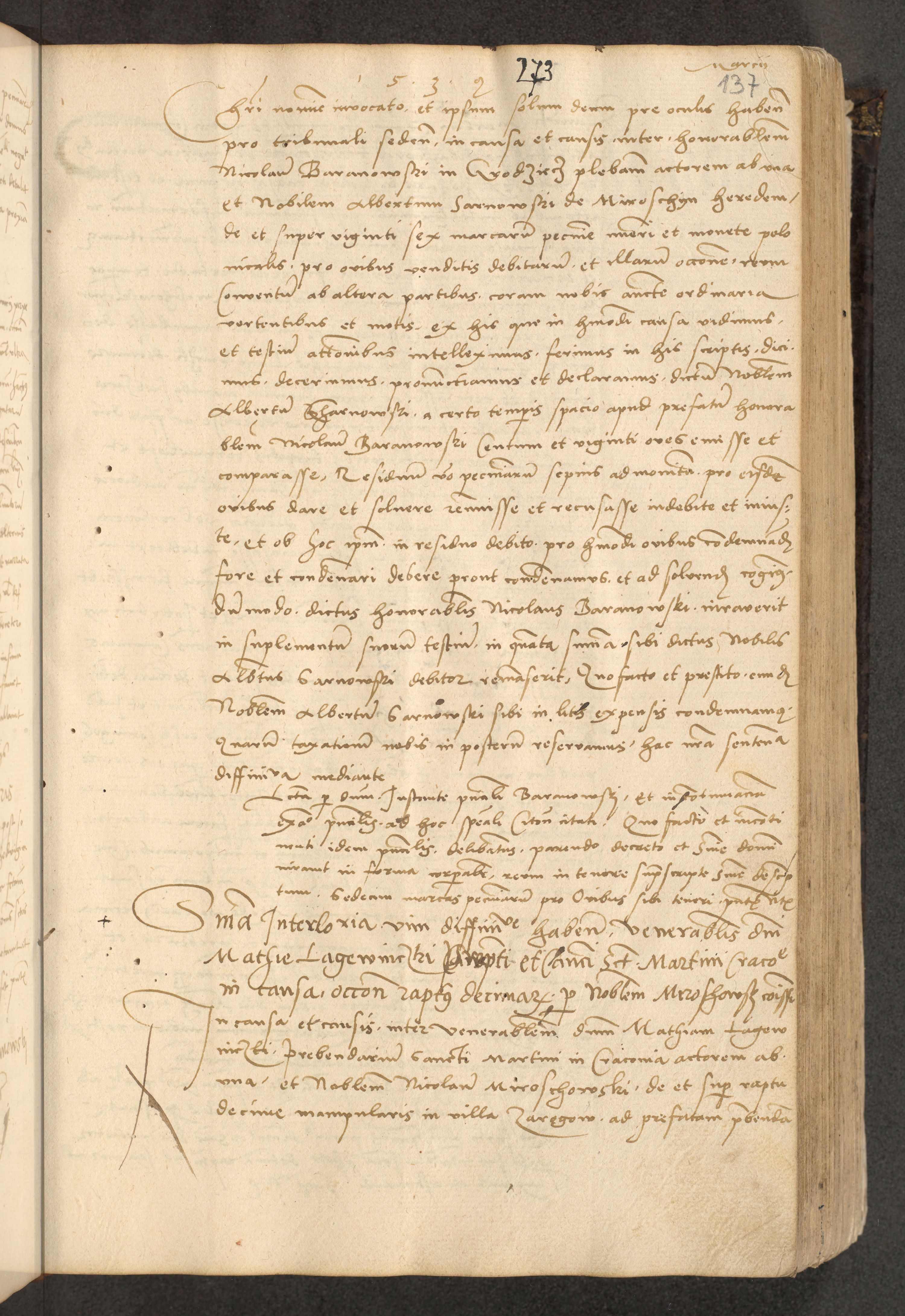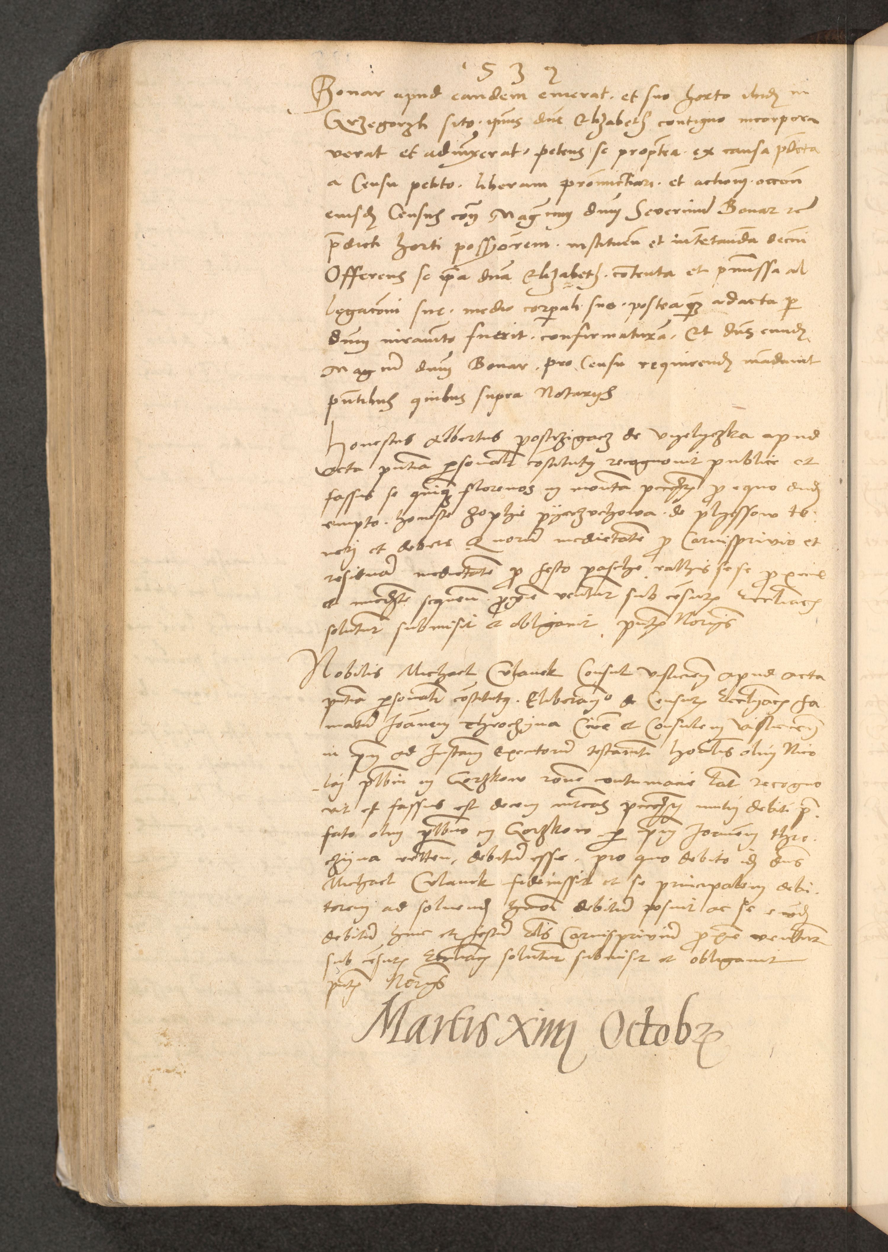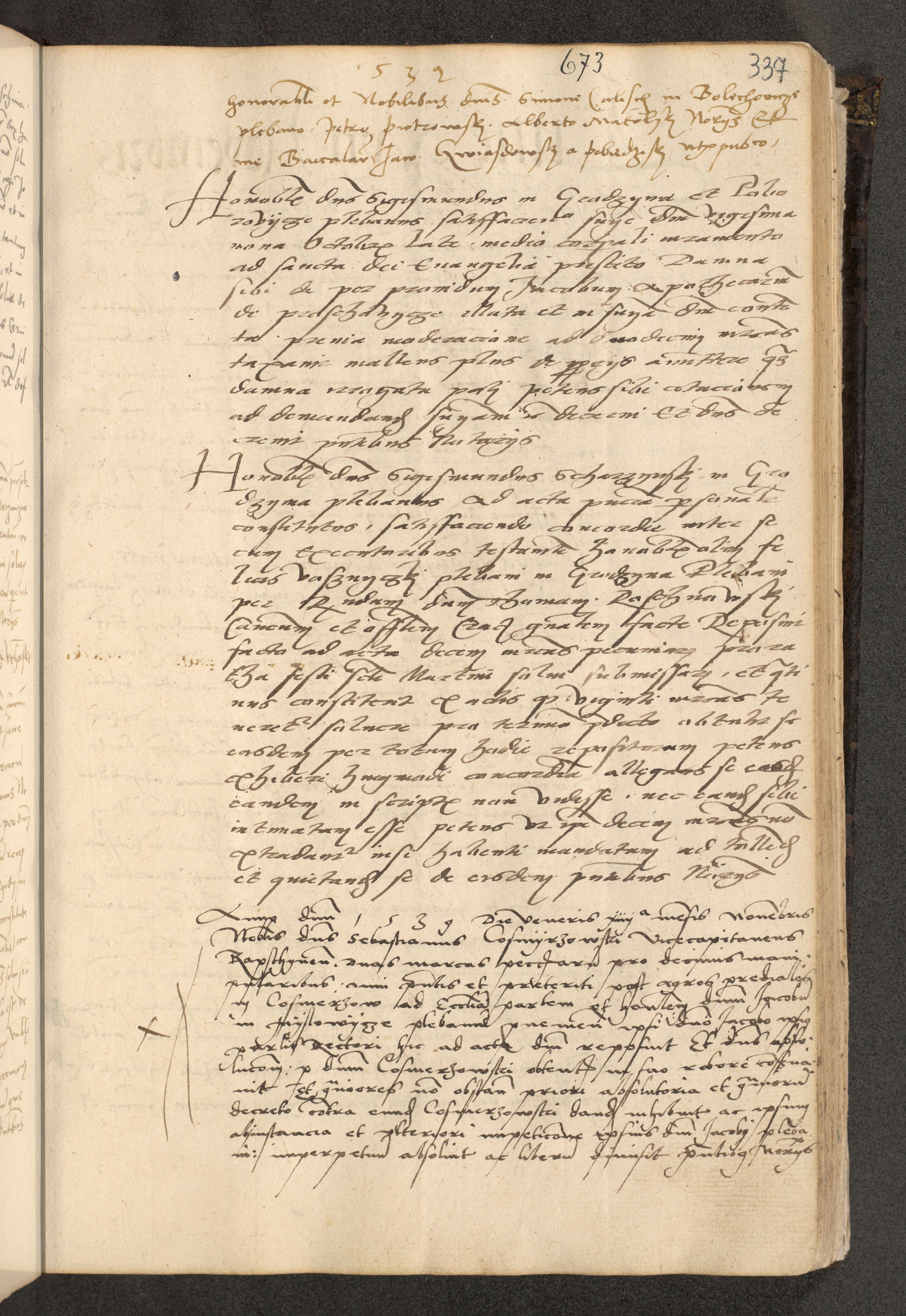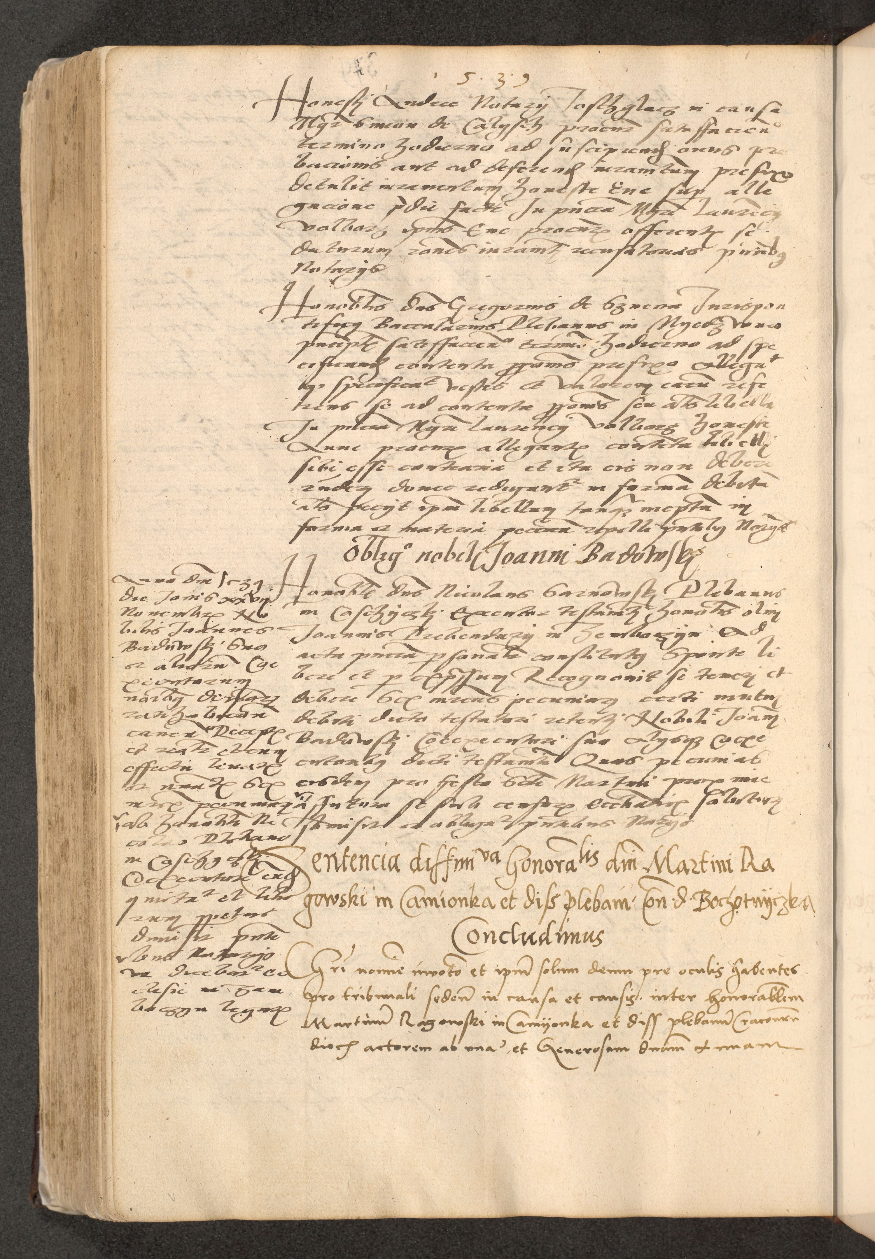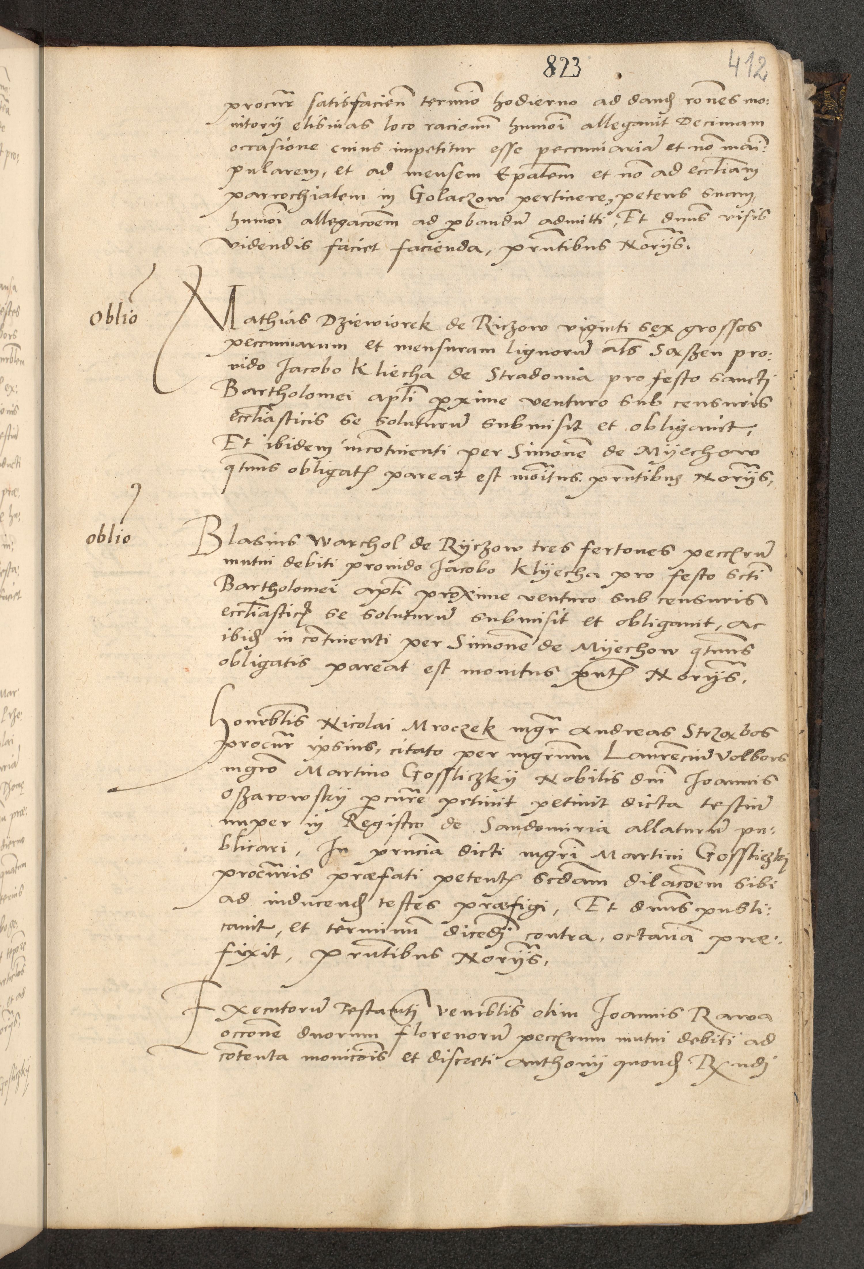 Acta actorum causarum, sentenciarum et obligationum coram reverendo patre domino Thoma Roznowski canonico et reverendissimi in Christo patris et domini domini Patri Dei gratia Cracoviensis. Sabbato, 26 Octobris in ecclesiam suam solenniter recepti officialis generalis Cracoviensis dinita administratura, qua fungebatur post mortem reverendissimi olim felicis recordationis domini Joannis Choiecki episcopi Cracoviensis et Regni Polonie cancelarii anno presenti currenti videlicet 1538, die 11 Marcii Piotrcovie in comiciis celebratis circiter 23 horam defuncti sepulto corpore nona eiusdemque obsequiis X respective Aprilis peractis electo sub indictione XI, pontificatu vero sanctissimi in Christo patris et domini nostri domini Pauli divina providencia pape tercii foeliciter moderni, anno quarto, incepta felicibus auspiciis continuantur ordine processu infrascripto
