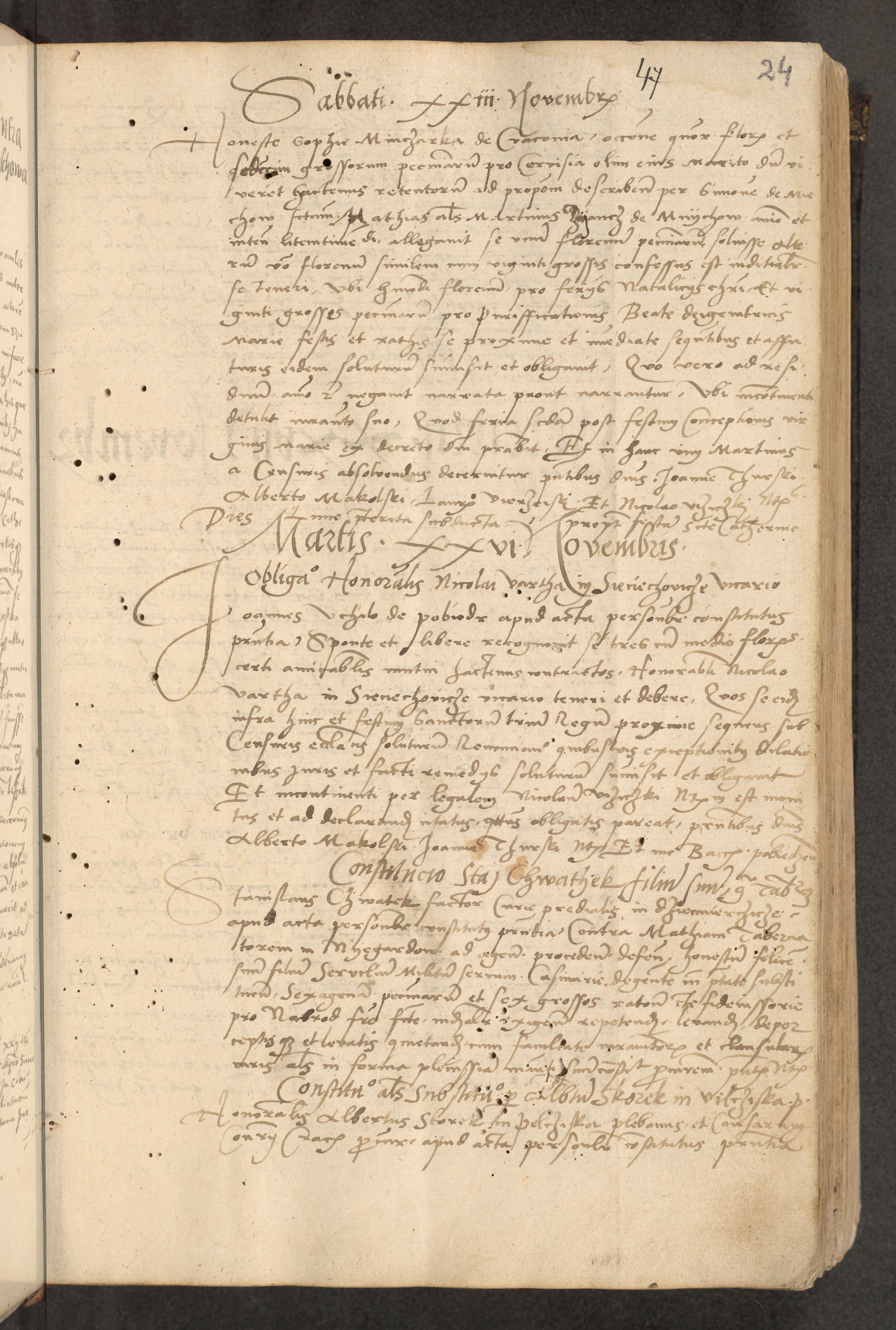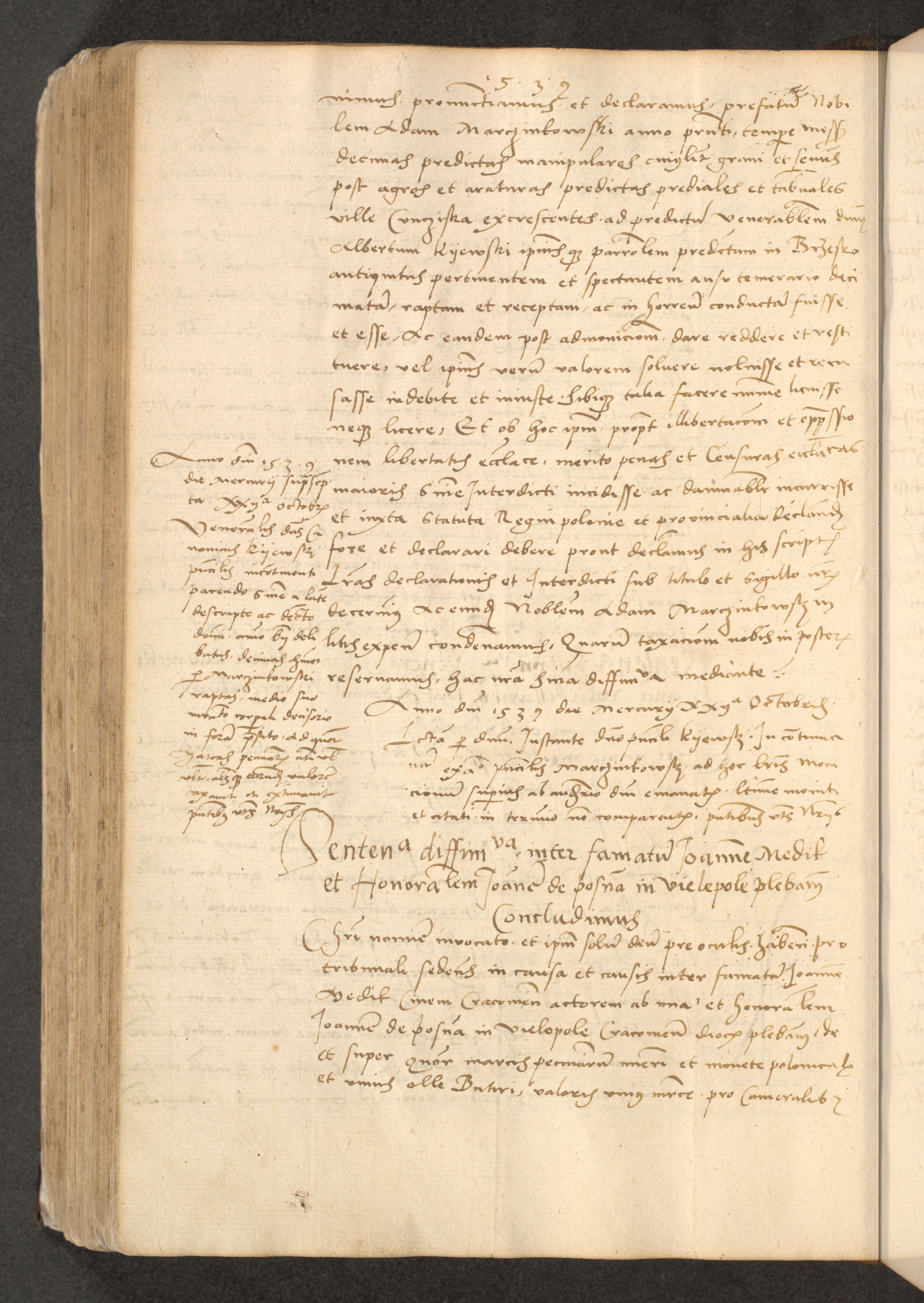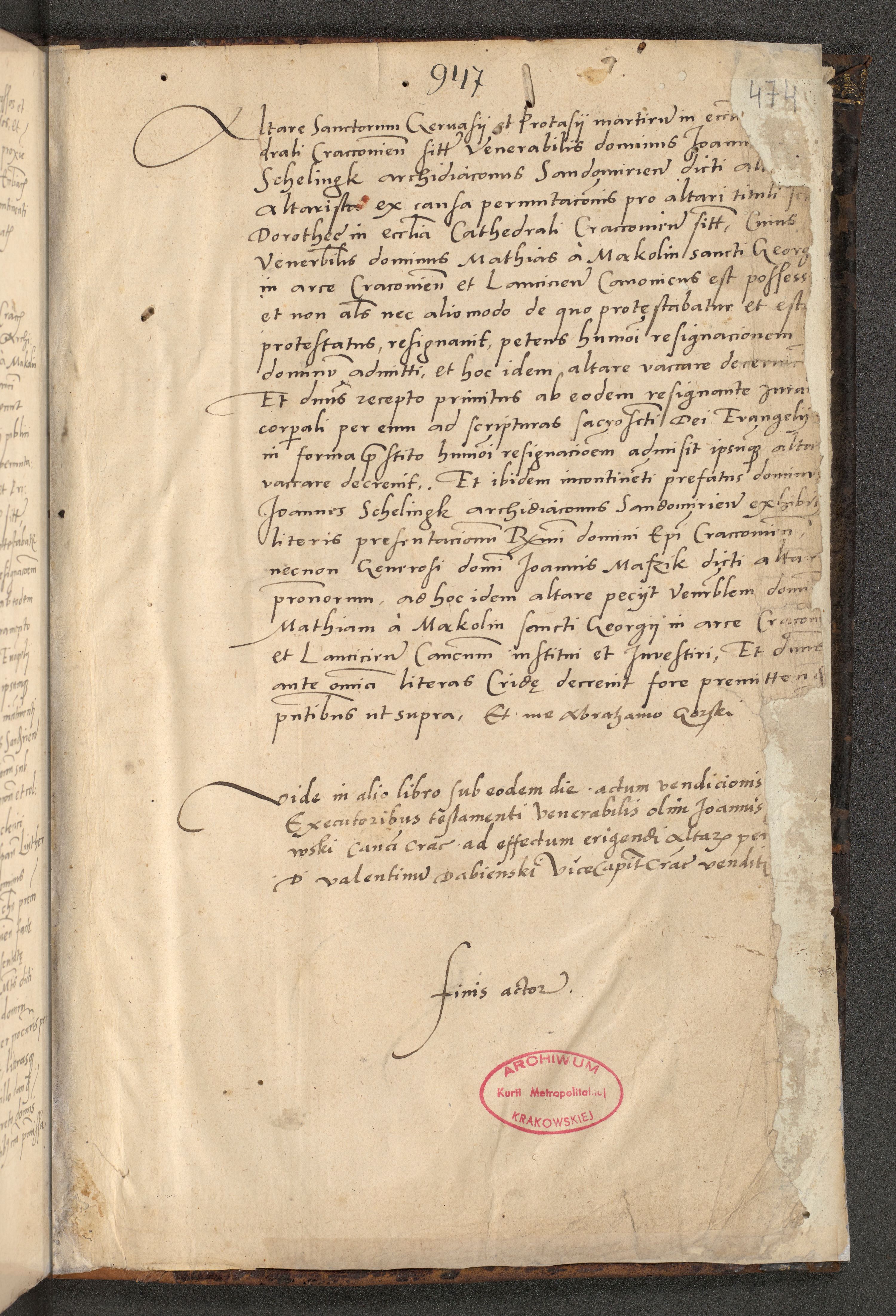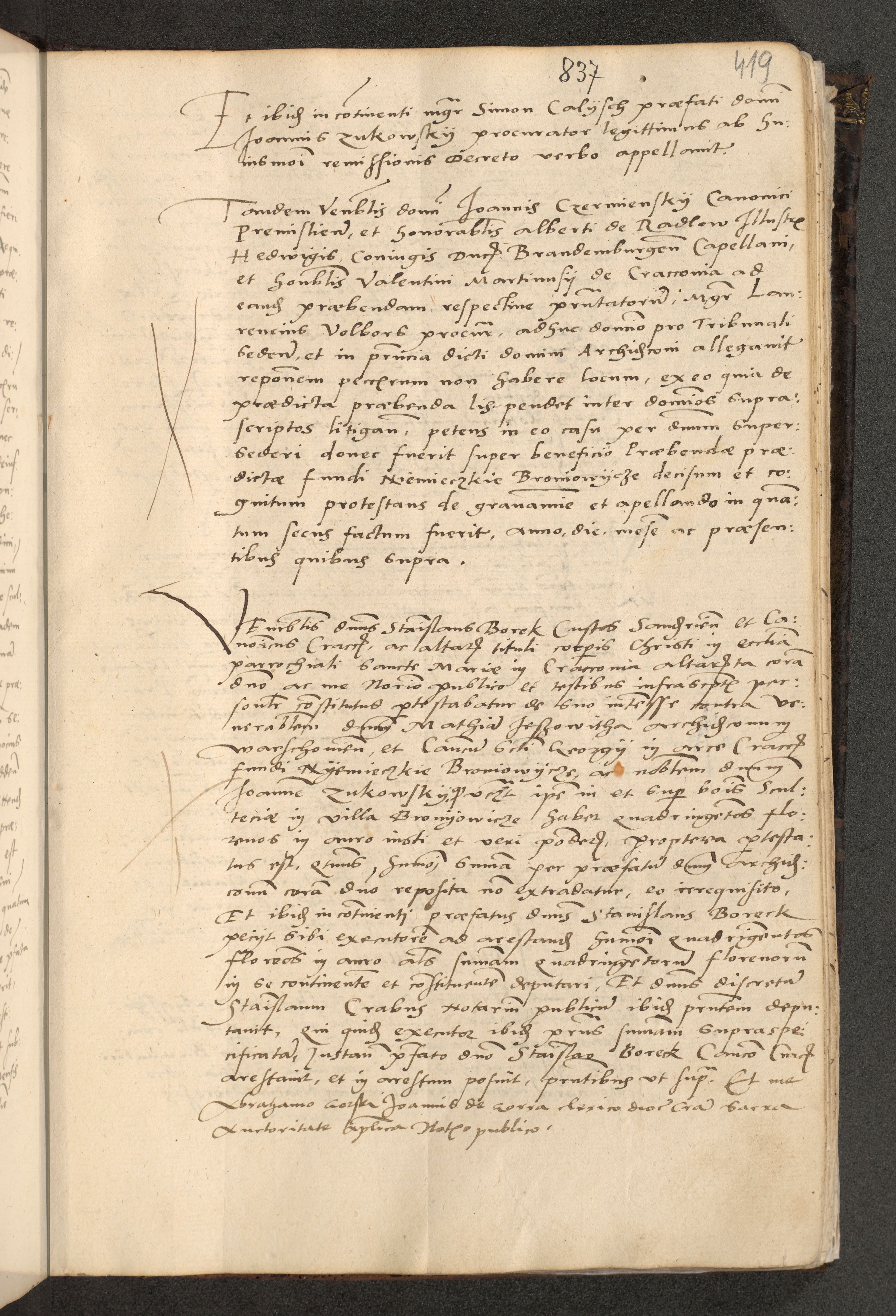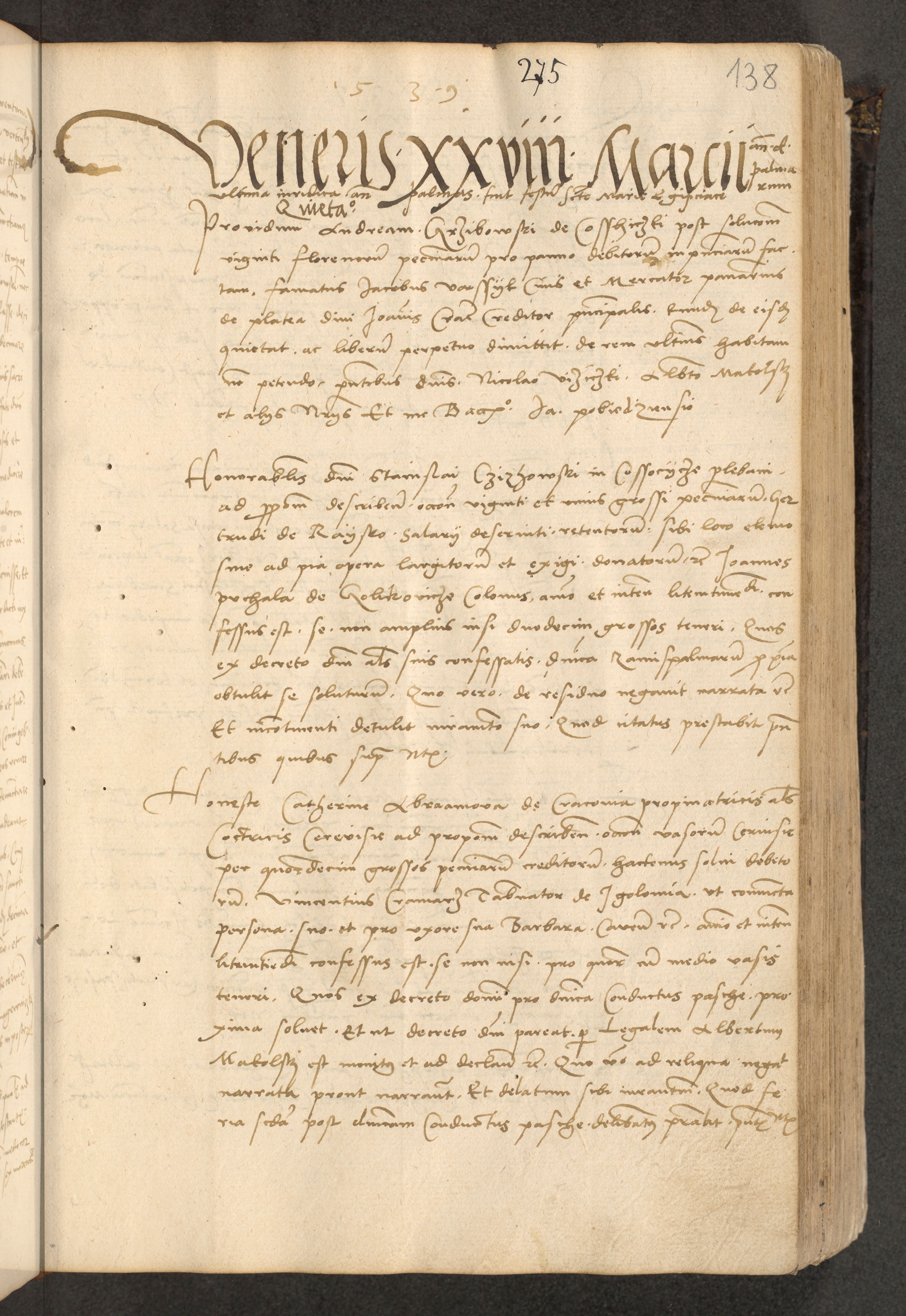 Acta actorum causarum, sentenciarum et obligationum coram reverendo patre domino Thoma Roznowski canonico et reverendissimi in Christo patris et domini domini Patri Dei gratia Cracoviensis. Sabbato, 26 Octobris in ecclesiam suam solenniter recepti officialis generalis Cracoviensis dinita administratura, qua fungebatur post mortem reverendissimi olim felicis recordationis domini Joannis Choiecki episcopi Cracoviensis et Regni Polonie cancelarii anno presenti currenti videlicet 1538, die 11 Marcii Piotrcovie in comiciis celebratis circiter 23 horam defuncti sepulto corpore nona eiusdemque obsequiis X respective Aprilis peractis electo sub indictione XI, pontificatu vero sanctissimi in Christo patris et domini nostri domini Pauli divina providencia pape tercii foeliciter moderni, anno quarto, incepta felicibus auspiciis continuantur ordine processu infrascripto