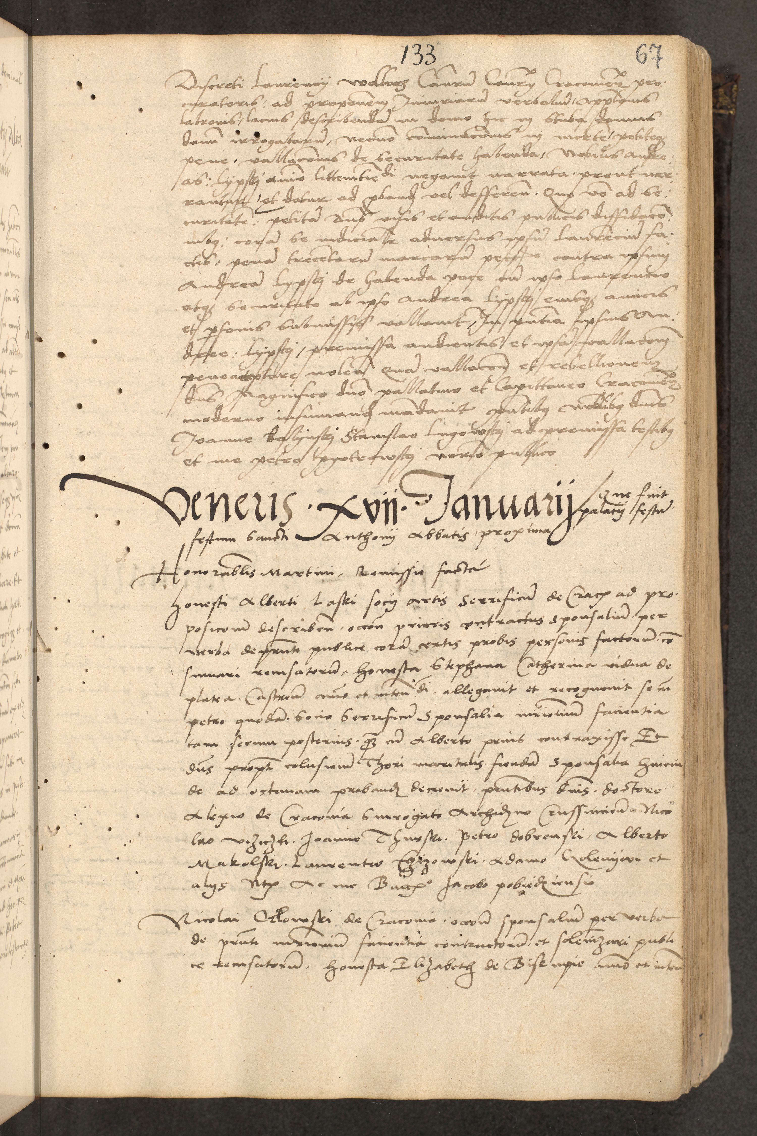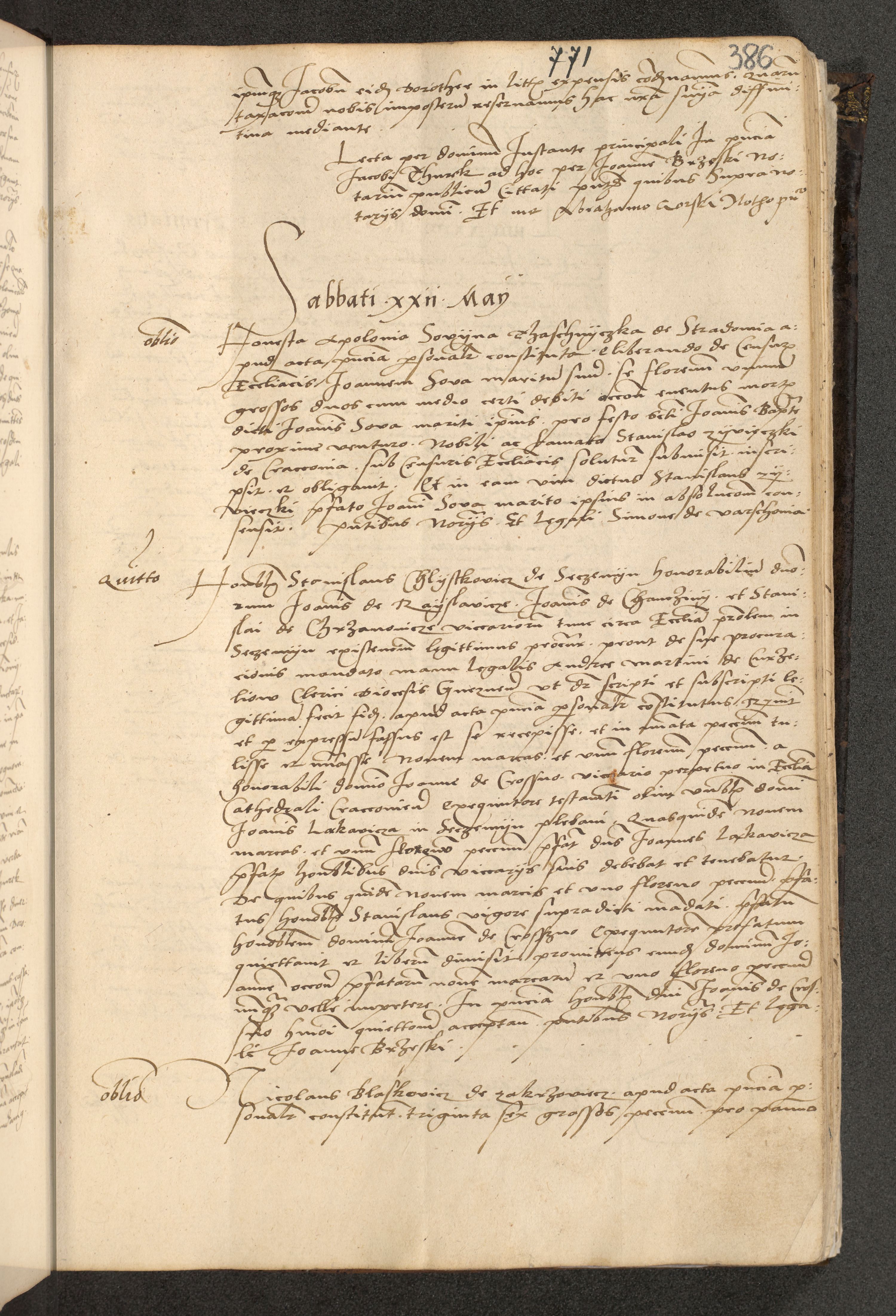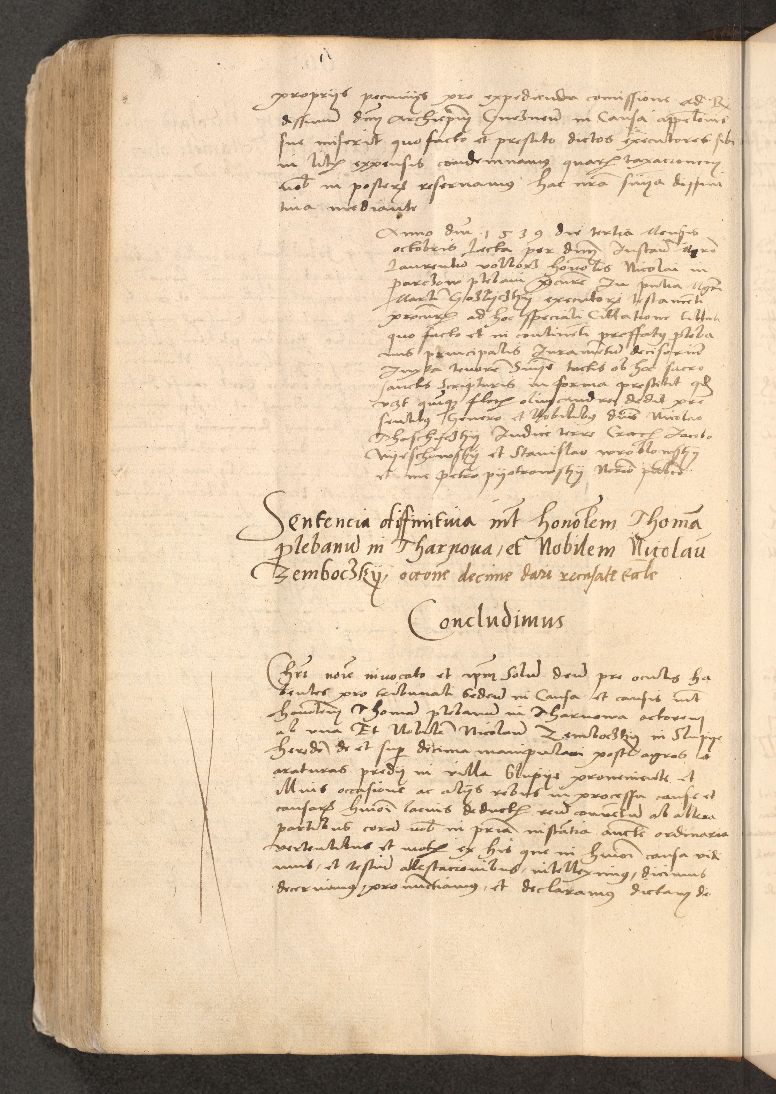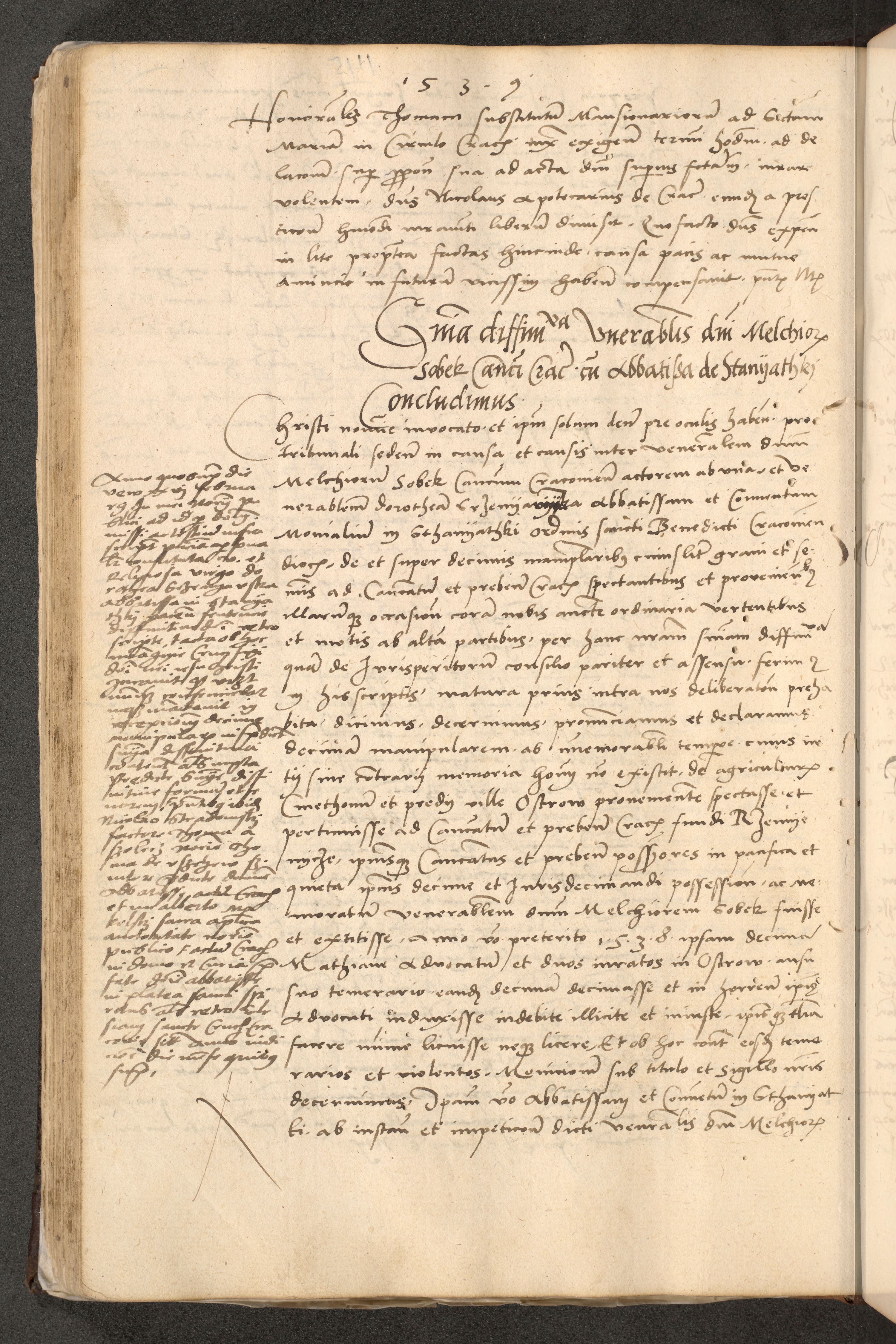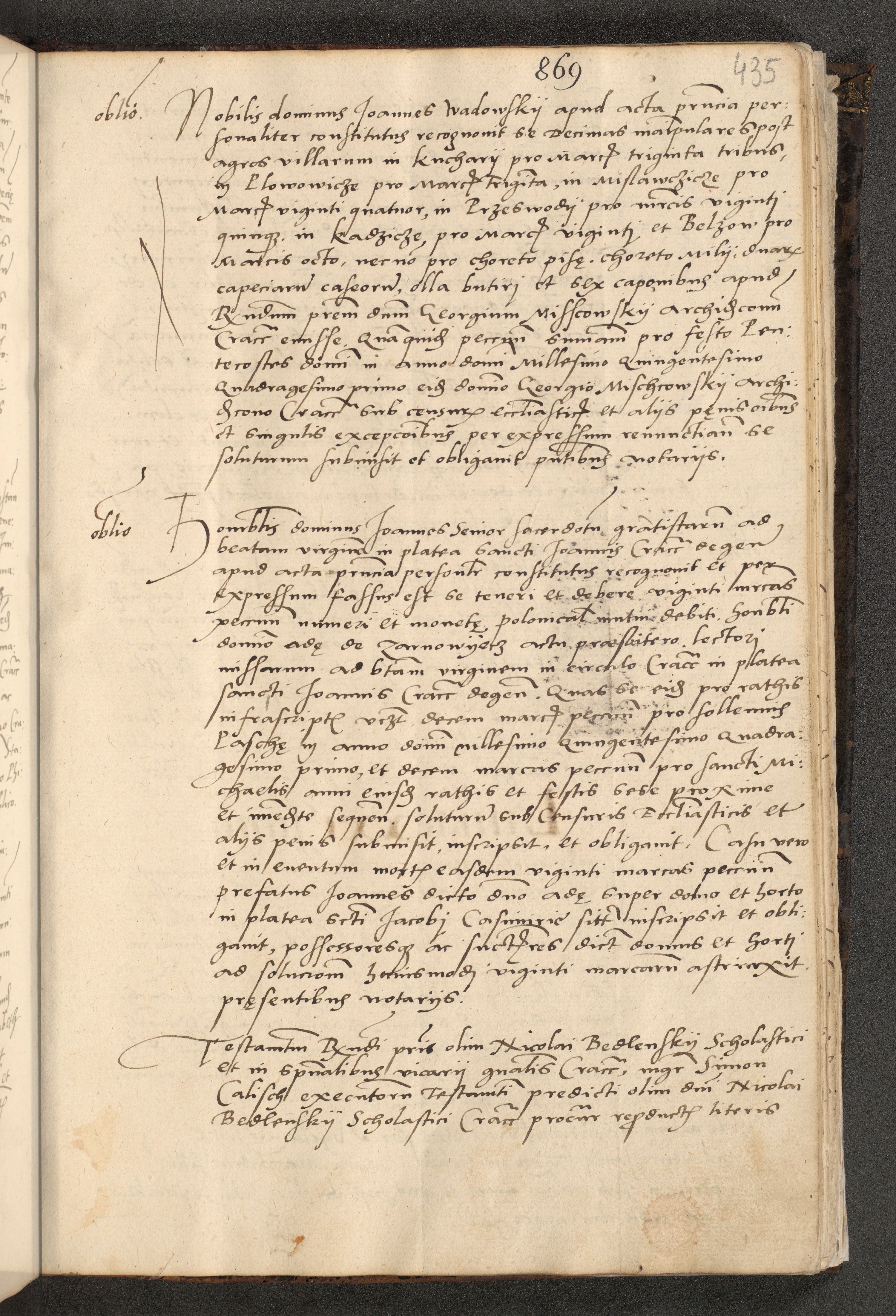 Acta actorum causarum, sentenciarum et obligationum coram reverendo patre domino Thoma Roznowski canonico et reverendissimi in Christo patris et domini domini Patri Dei gratia Cracoviensis. Sabbato, 26 Octobris in ecclesiam suam solenniter recepti officialis generalis Cracoviensis dinita administratura, qua fungebatur post mortem reverendissimi olim felicis recordationis domini Joannis Choiecki episcopi Cracoviensis et Regni Polonie cancelarii anno presenti currenti videlicet 1538, die 11 Marcii Piotrcovie in comiciis celebratis circiter 23 horam defuncti sepulto corpore nona eiusdemque obsequiis X respective Aprilis peractis electo sub indictione XI, pontificatu vero sanctissimi in Christo patris et domini nostri domini Pauli divina providencia pape tercii foeliciter moderni, anno quarto, incepta felicibus auspiciis continuantur ordine processu infrascripto