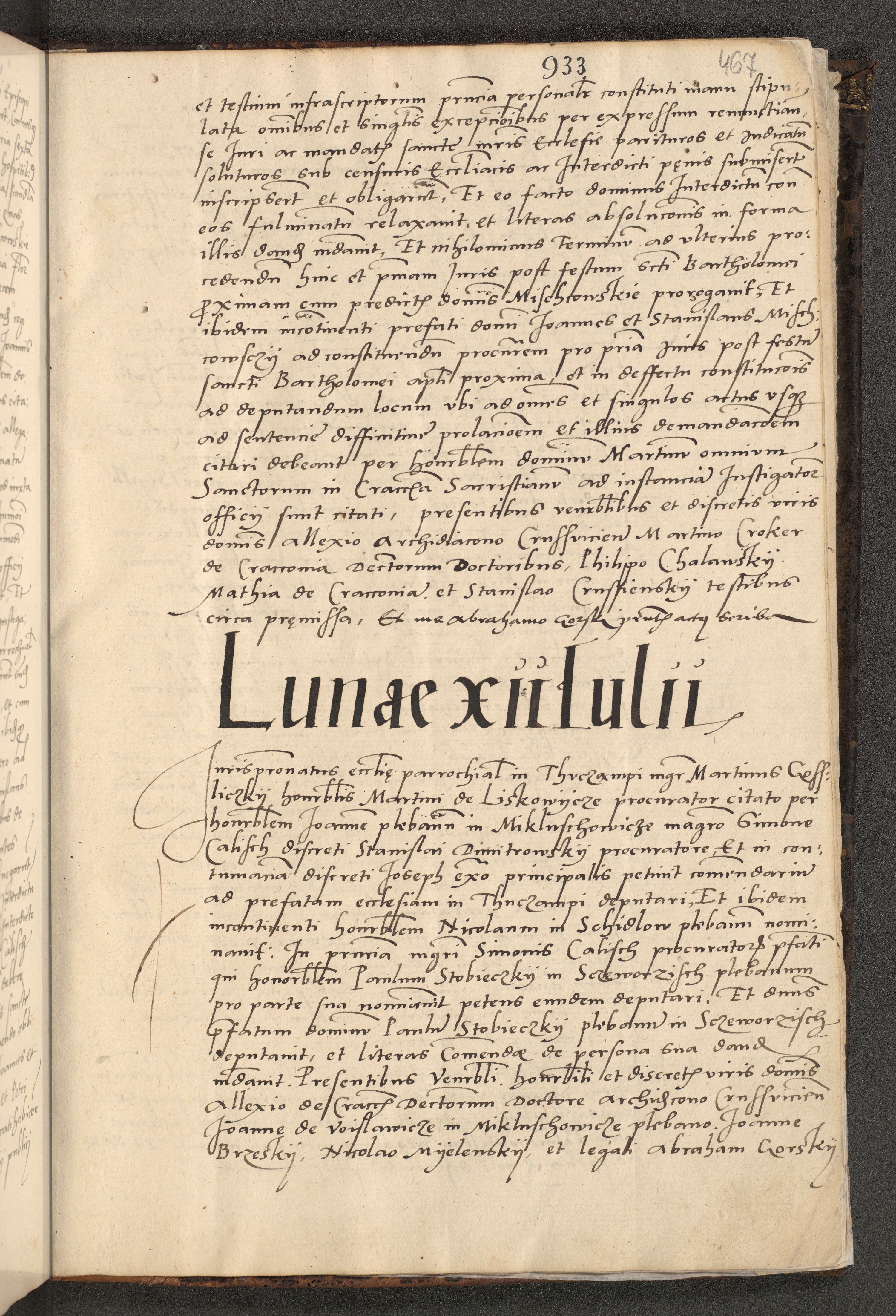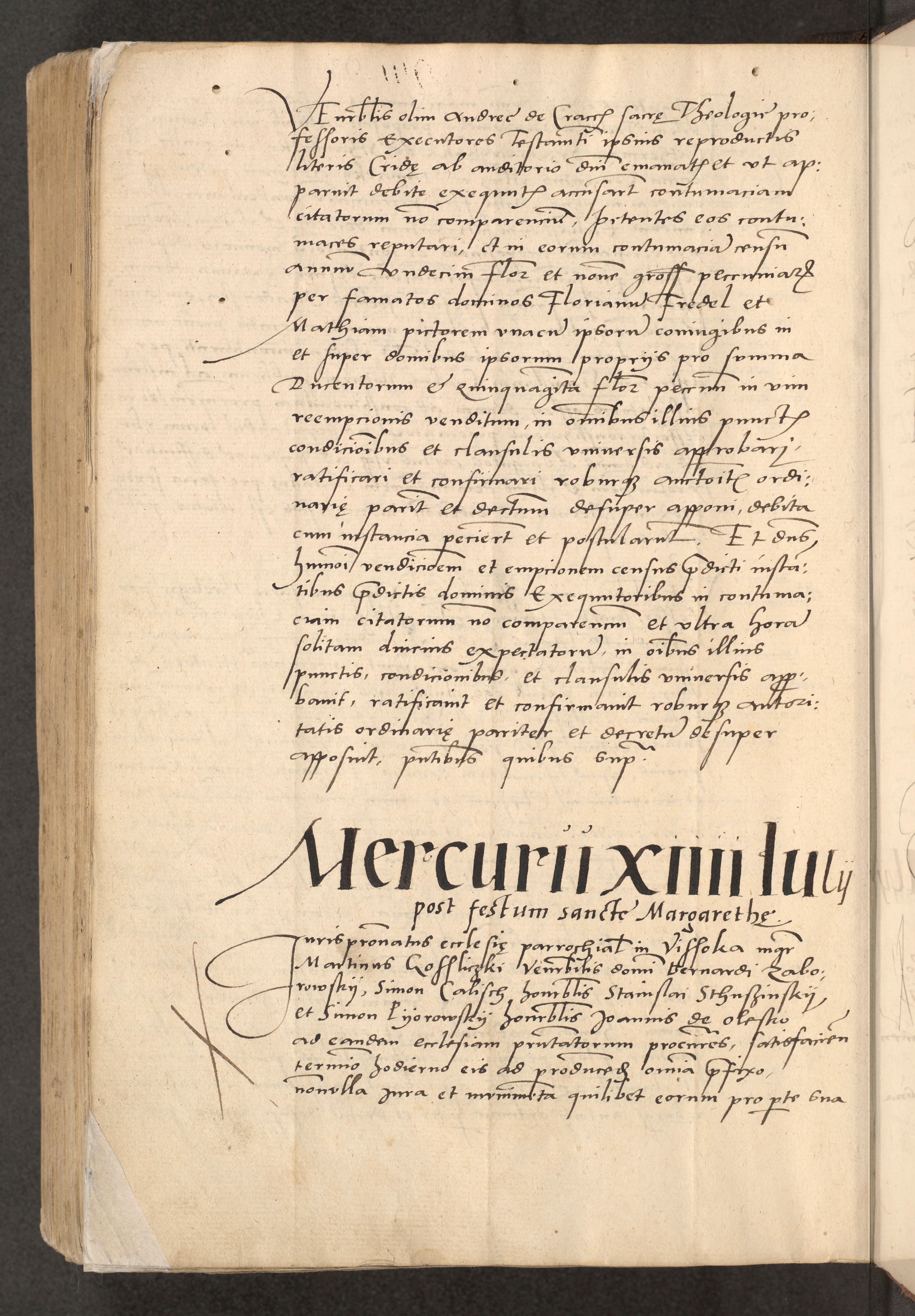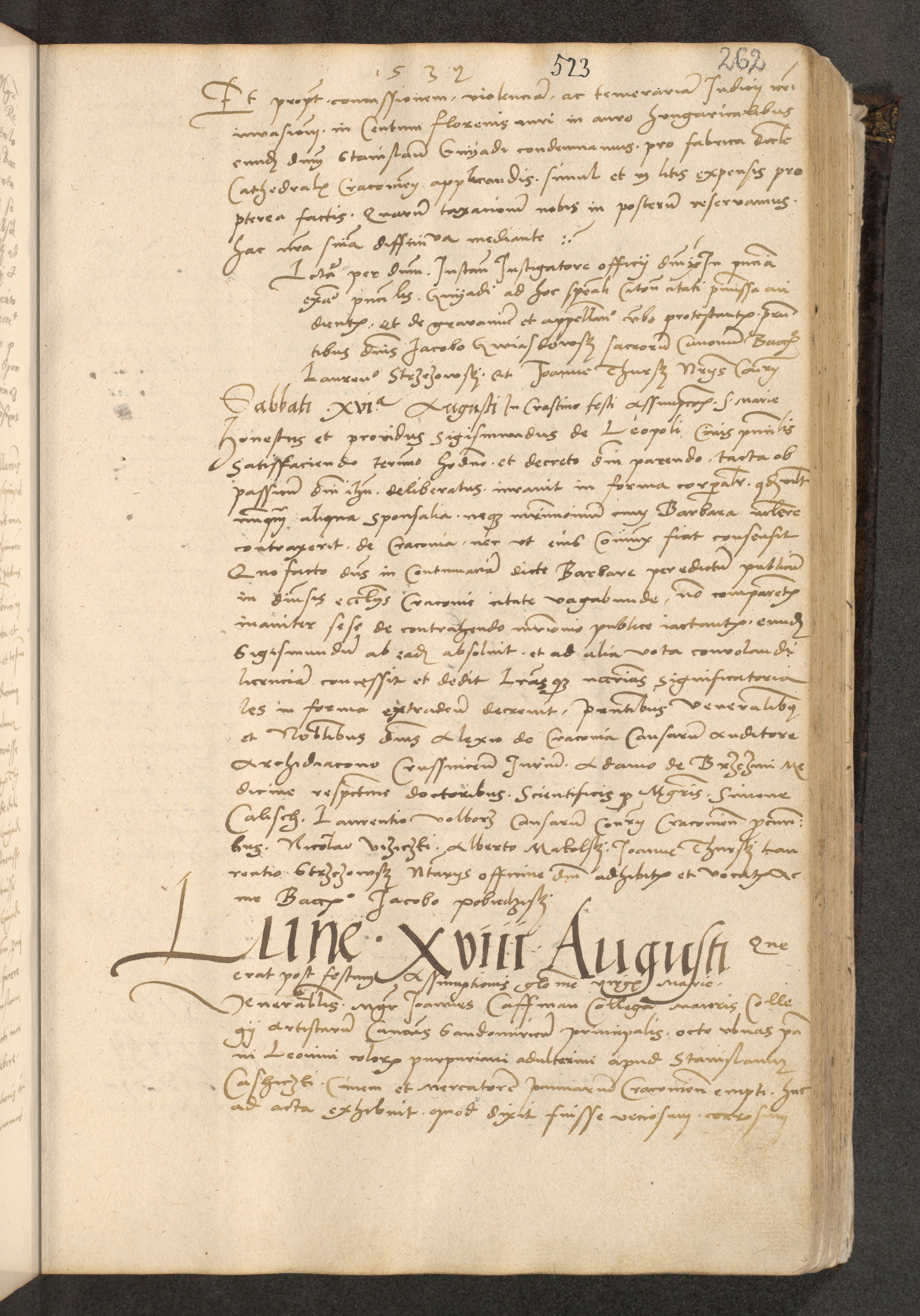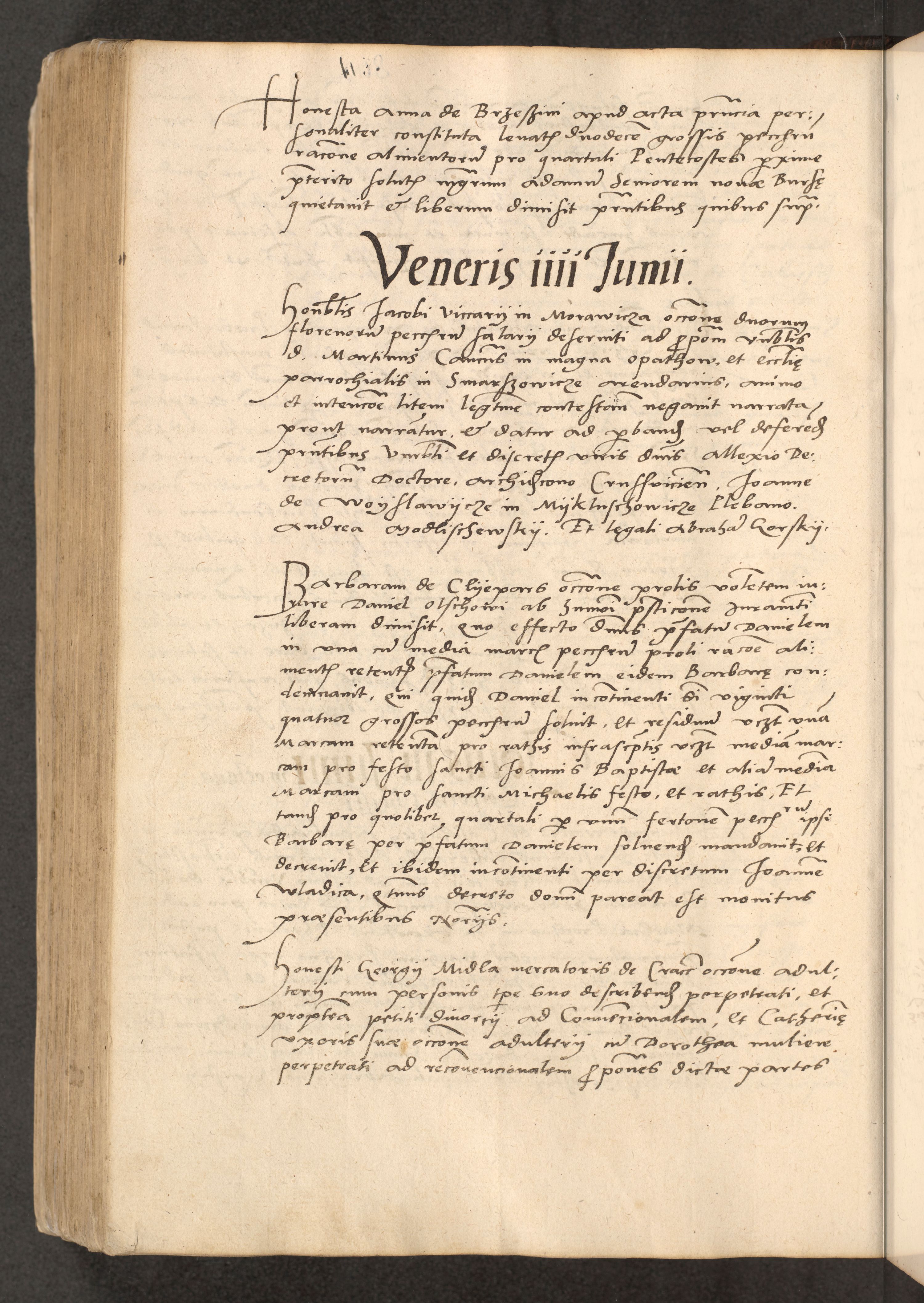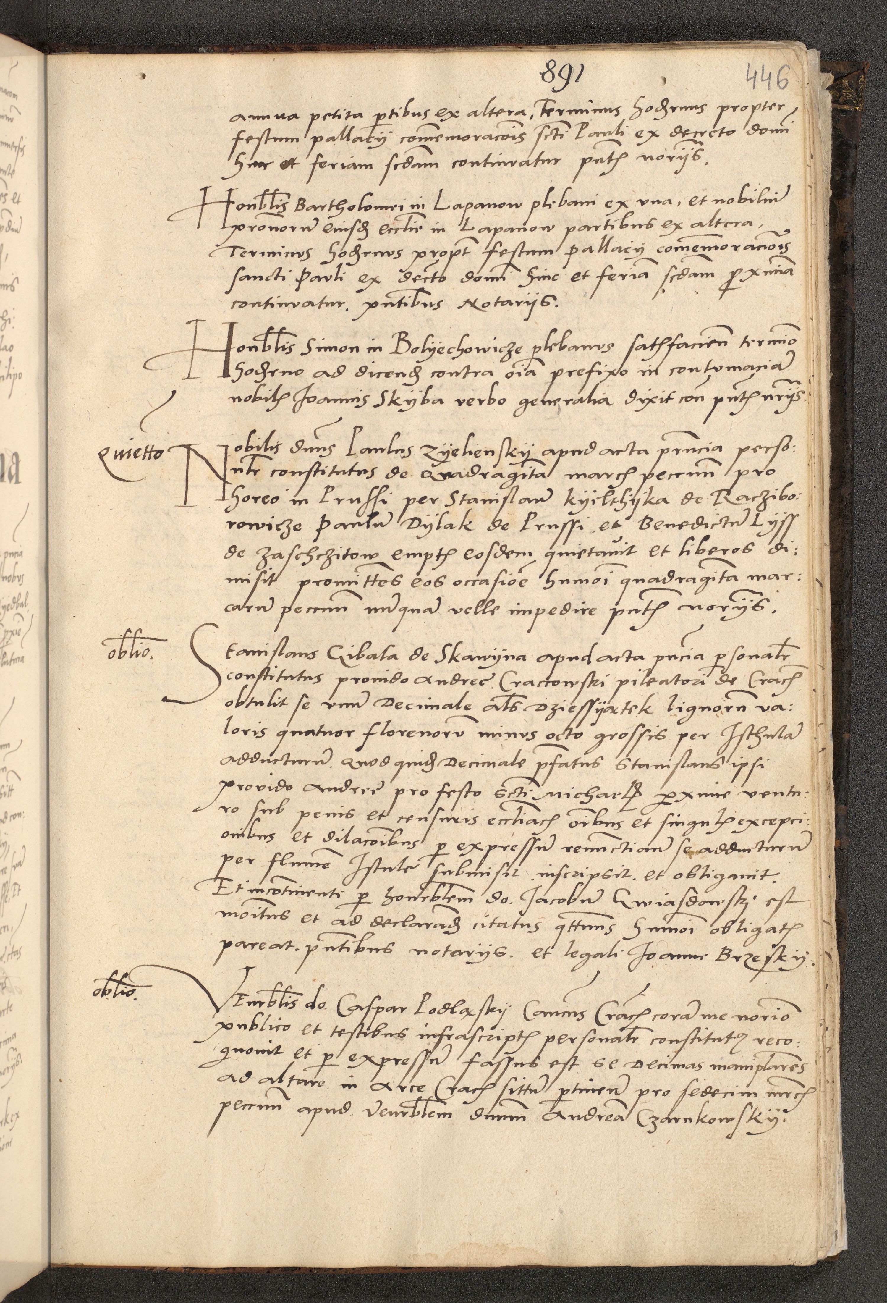 Acta actorum causarum, sentenciarum et obligationum coram reverendo patre domino Thoma Roznowski canonico et reverendissimi in Christo patris et domini domini Patri Dei gratia Cracoviensis. Sabbato, 26 Octobris in ecclesiam suam solenniter recepti officialis generalis Cracoviensis dinita administratura, qua fungebatur post mortem reverendissimi olim felicis recordationis domini Joannis Choiecki episcopi Cracoviensis et Regni Polonie cancelarii anno presenti currenti videlicet 1538, die 11 Marcii Piotrcovie in comiciis celebratis circiter 23 horam defuncti sepulto corpore nona eiusdemque obsequiis X respective Aprilis peractis electo sub indictione XI, pontificatu vero sanctissimi in Christo patris et domini nostri domini Pauli divina providencia pape tercii foeliciter moderni, anno quarto, incepta felicibus auspiciis continuantur ordine processu infrascripto