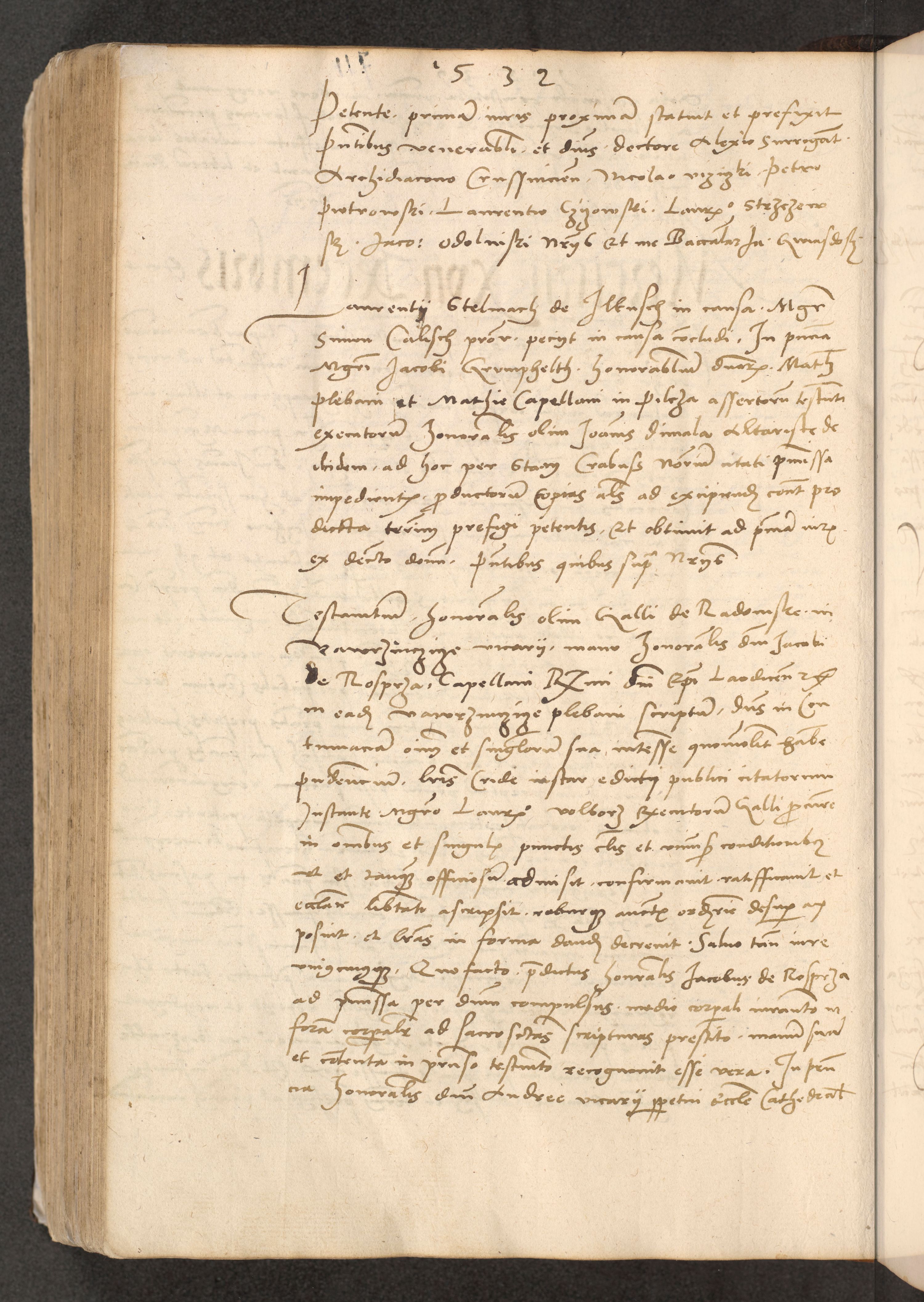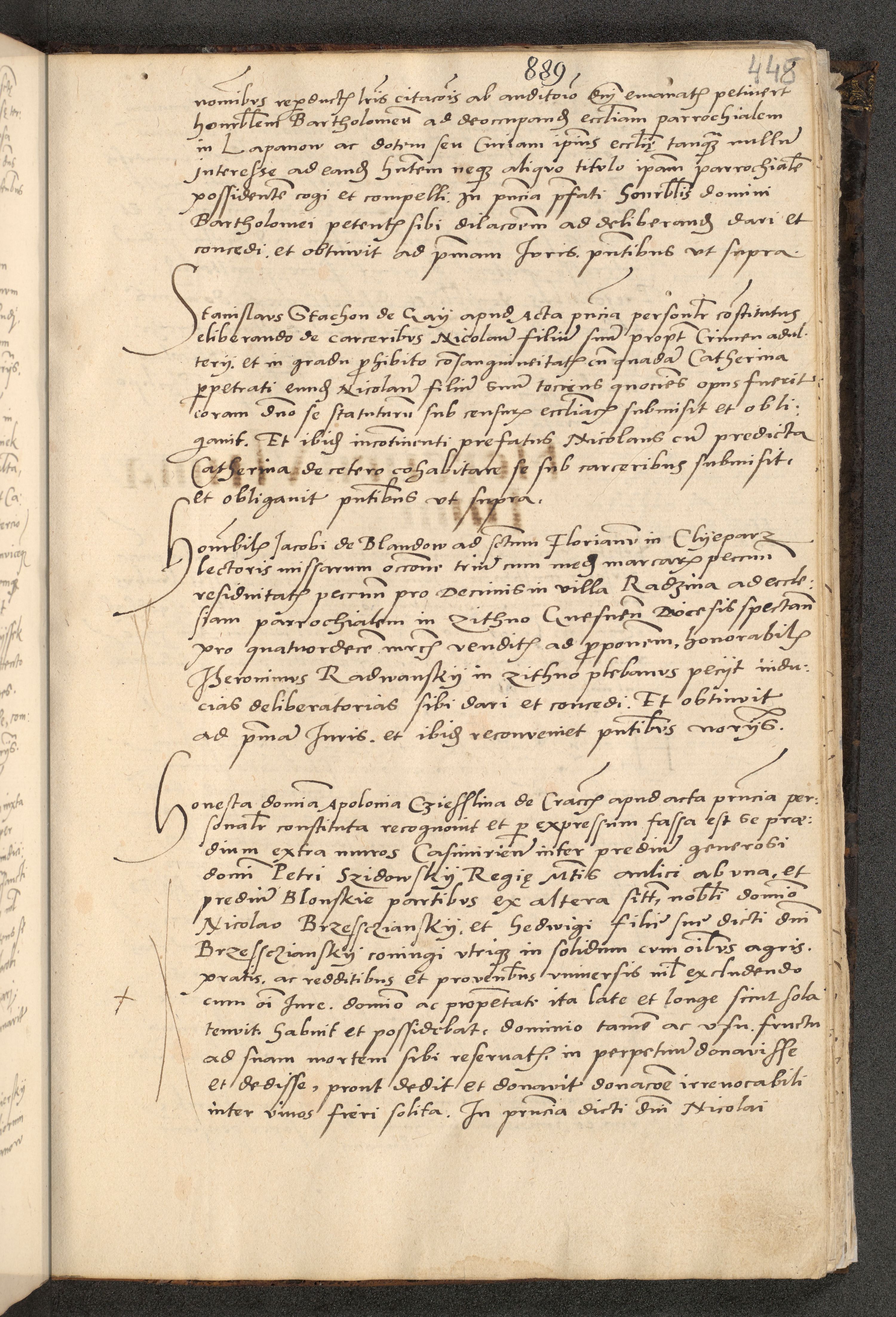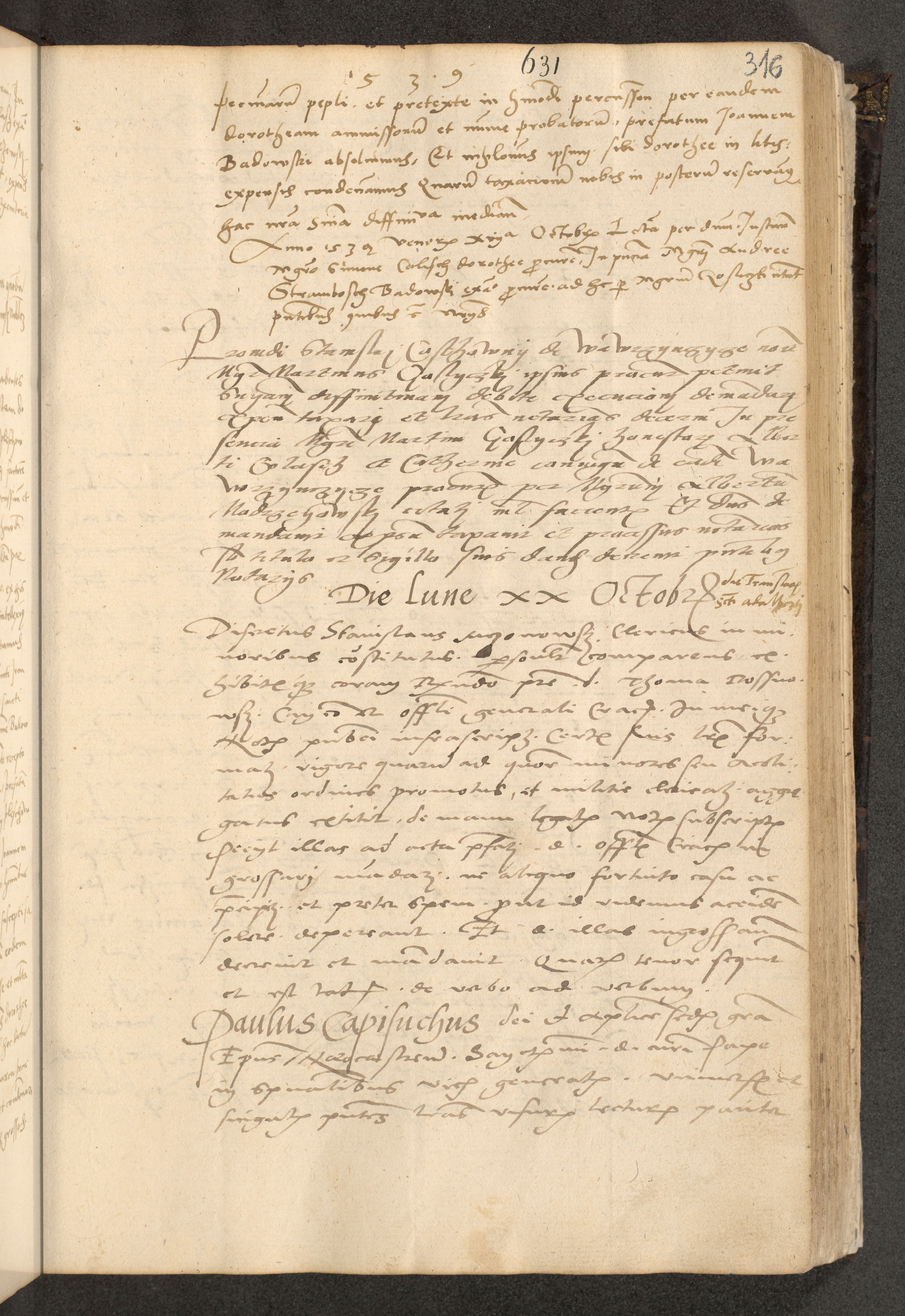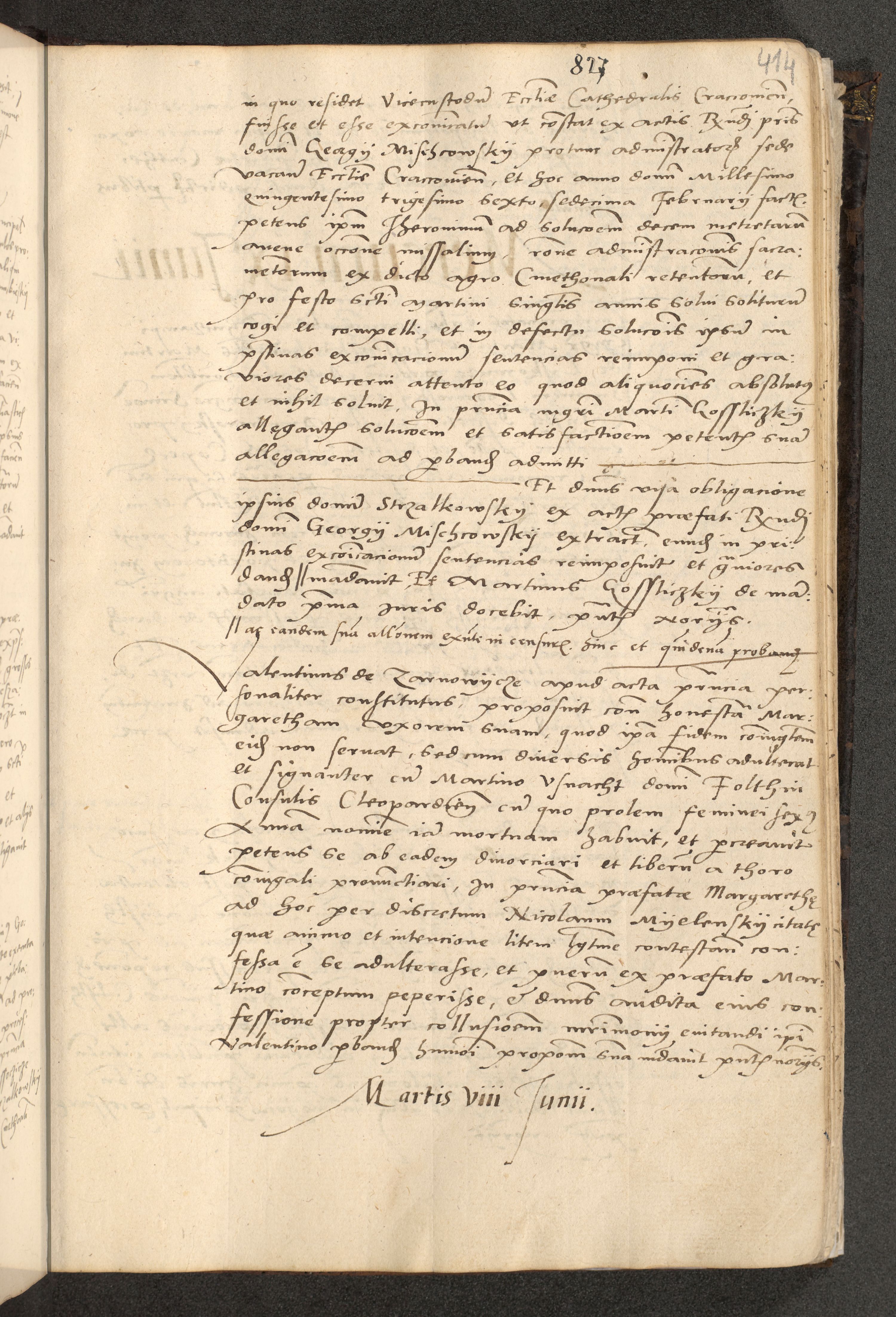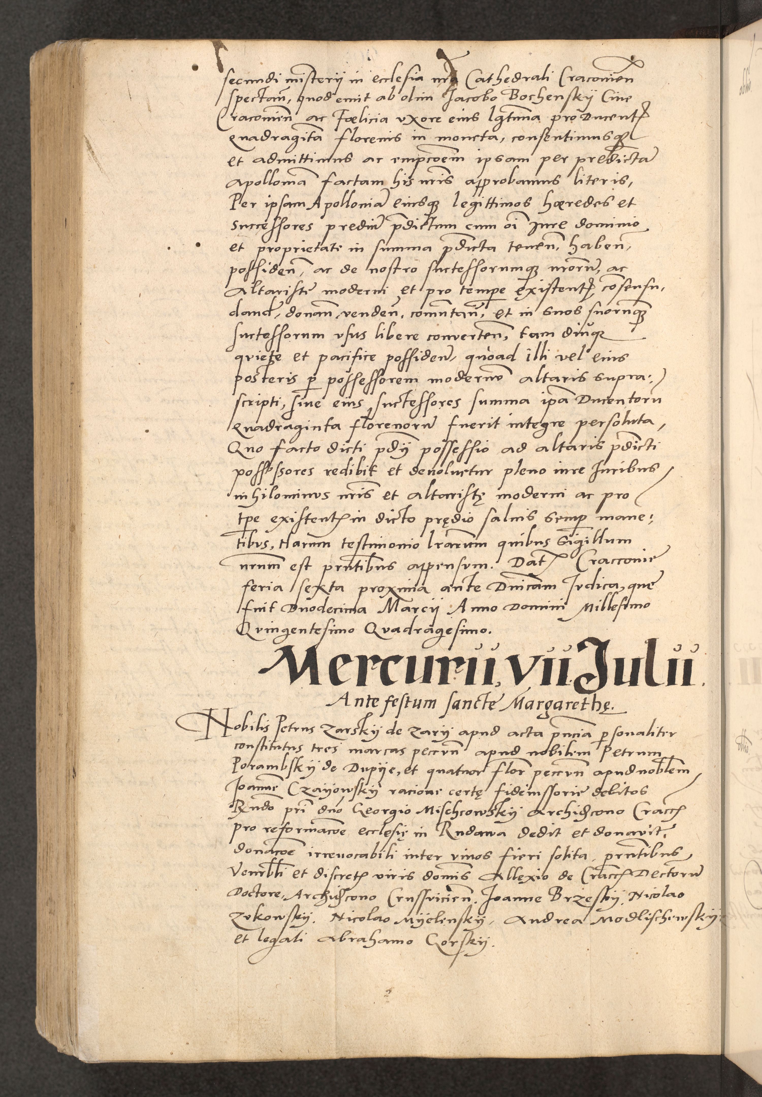 Acta actorum causarum, sentenciarum et obligationum coram reverendo patre domino Thoma Roznowski canonico et reverendissimi in Christo patris et domini domini Patri Dei gratia Cracoviensis. Sabbato, 26 Octobris in ecclesiam suam solenniter recepti officialis generalis Cracoviensis dinita administratura, qua fungebatur post mortem reverendissimi olim felicis recordationis domini Joannis Choiecki episcopi Cracoviensis et Regni Polonie cancelarii anno presenti currenti videlicet 1538, die 11 Marcii Piotrcovie in comiciis celebratis circiter 23 horam defuncti sepulto corpore nona eiusdemque obsequiis X respective Aprilis peractis electo sub indictione XI, pontificatu vero sanctissimi in Christo patris et domini nostri domini Pauli divina providencia pape tercii foeliciter moderni, anno quarto, incepta felicibus auspiciis continuantur ordine processu infrascripto