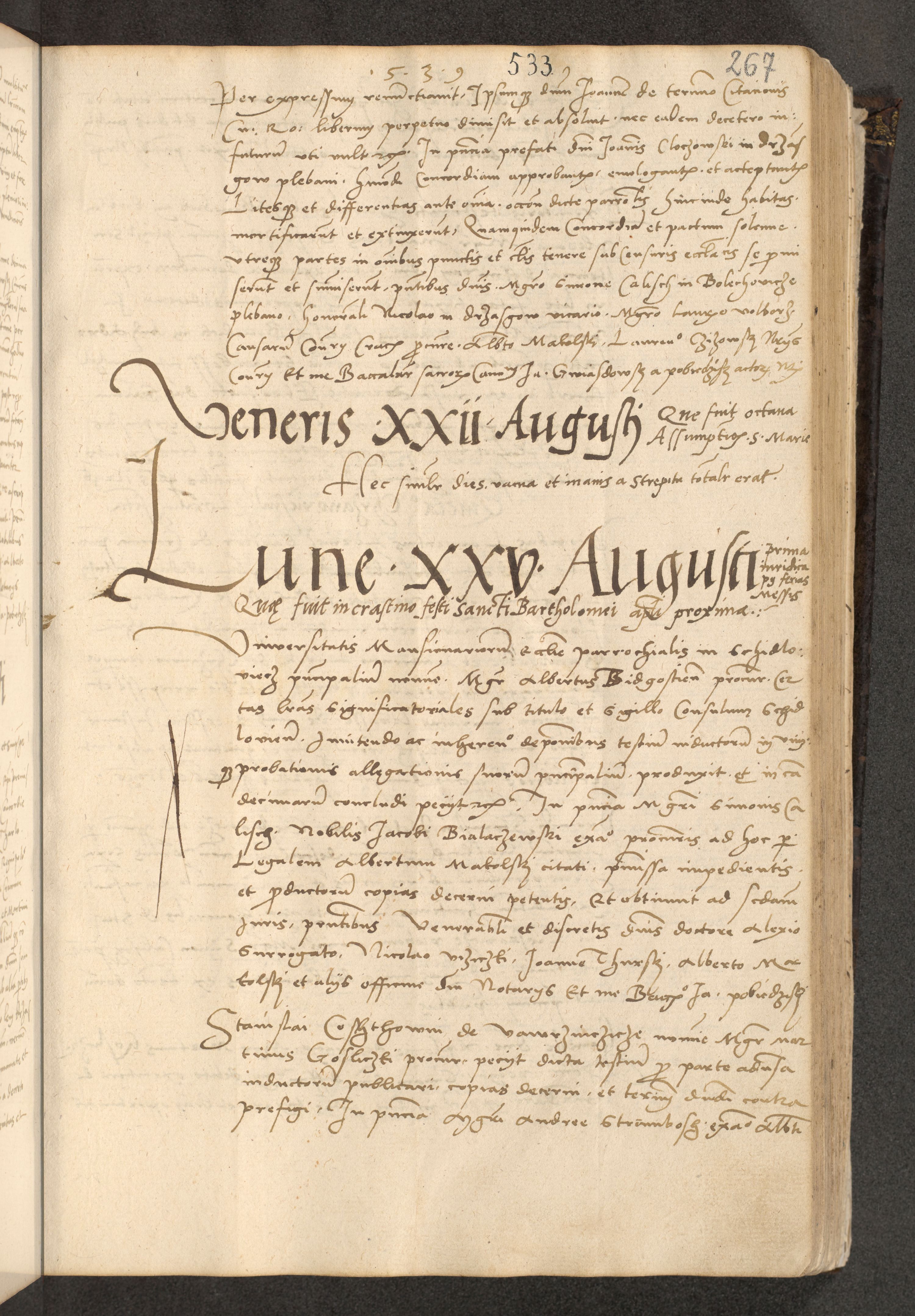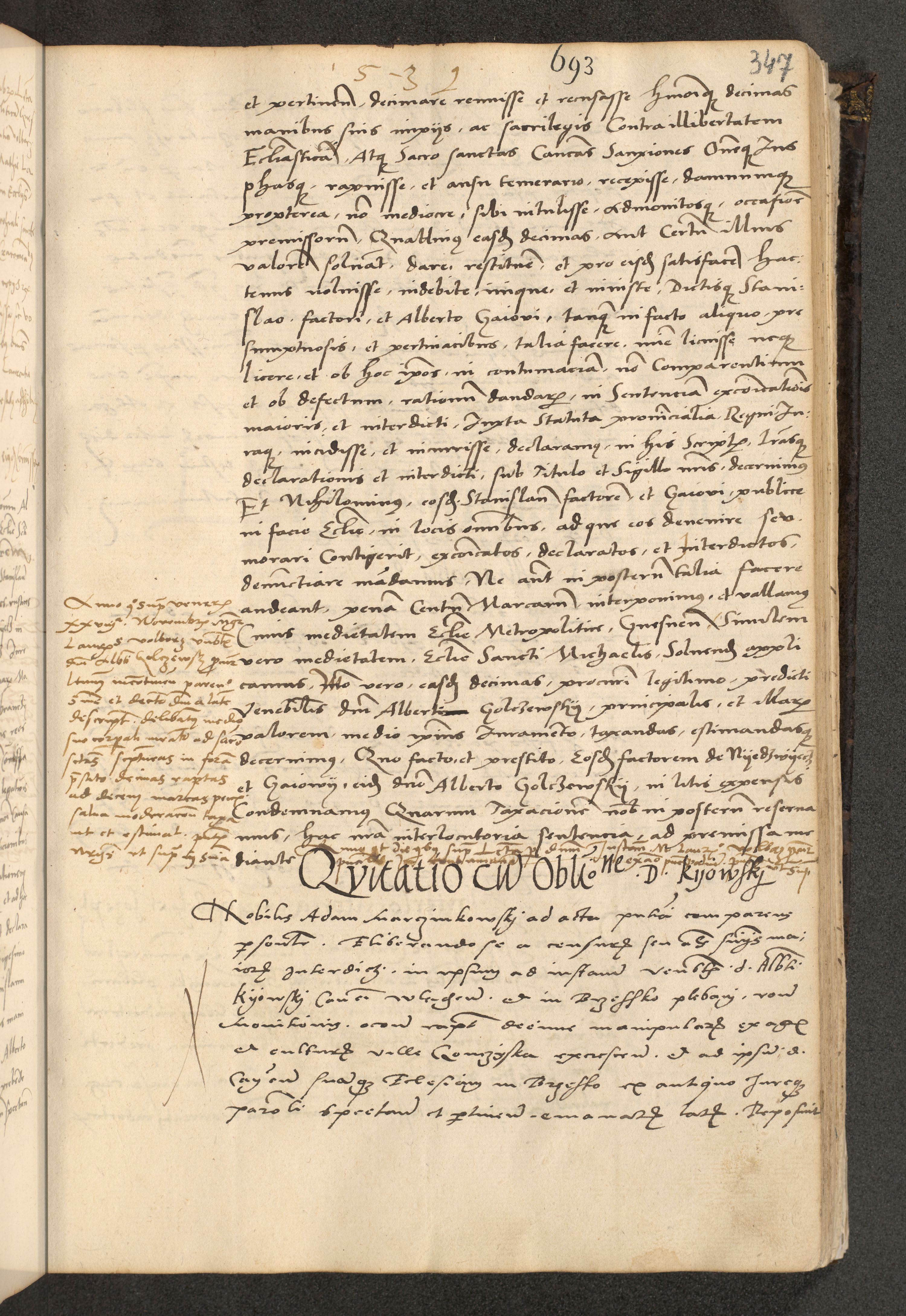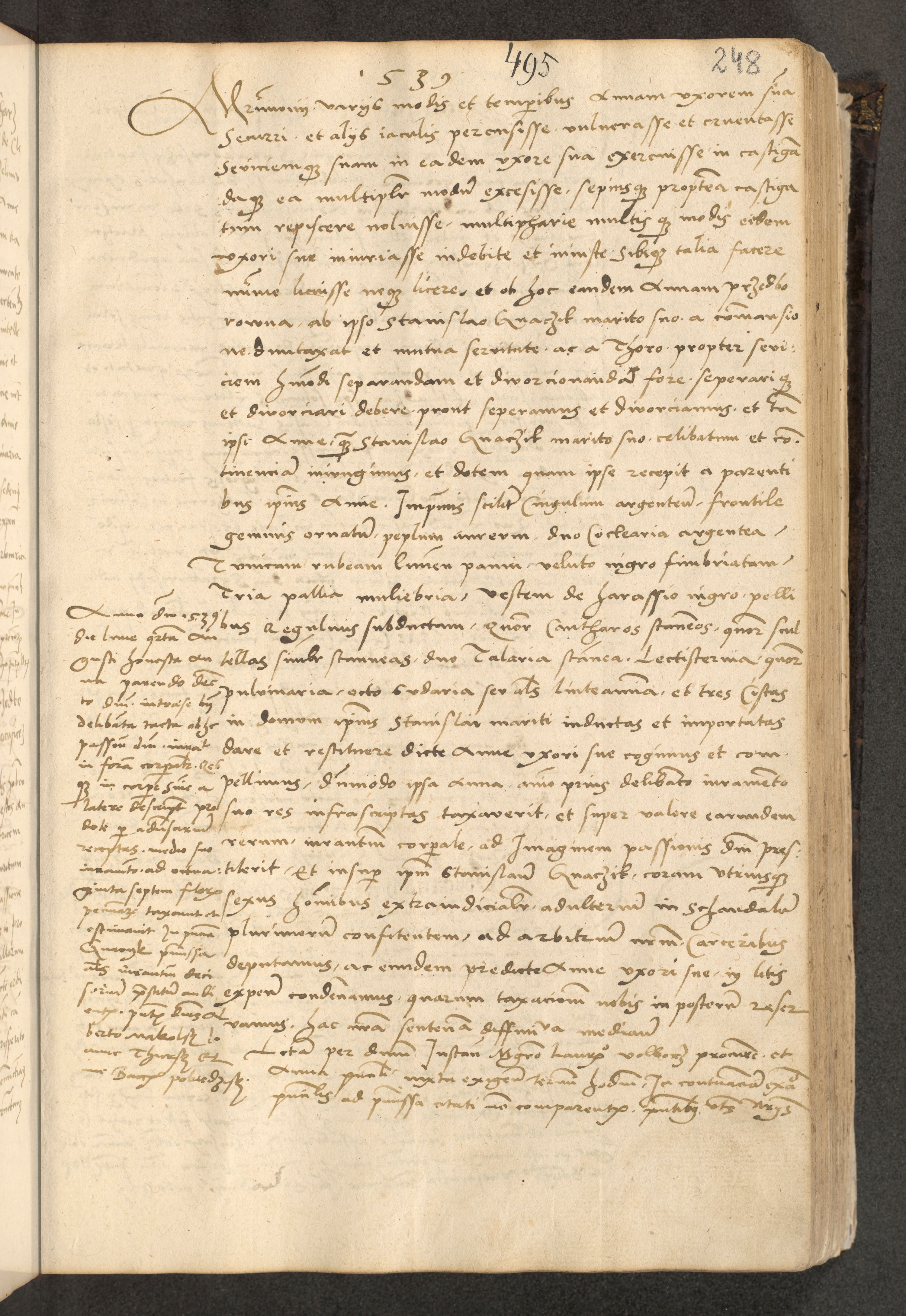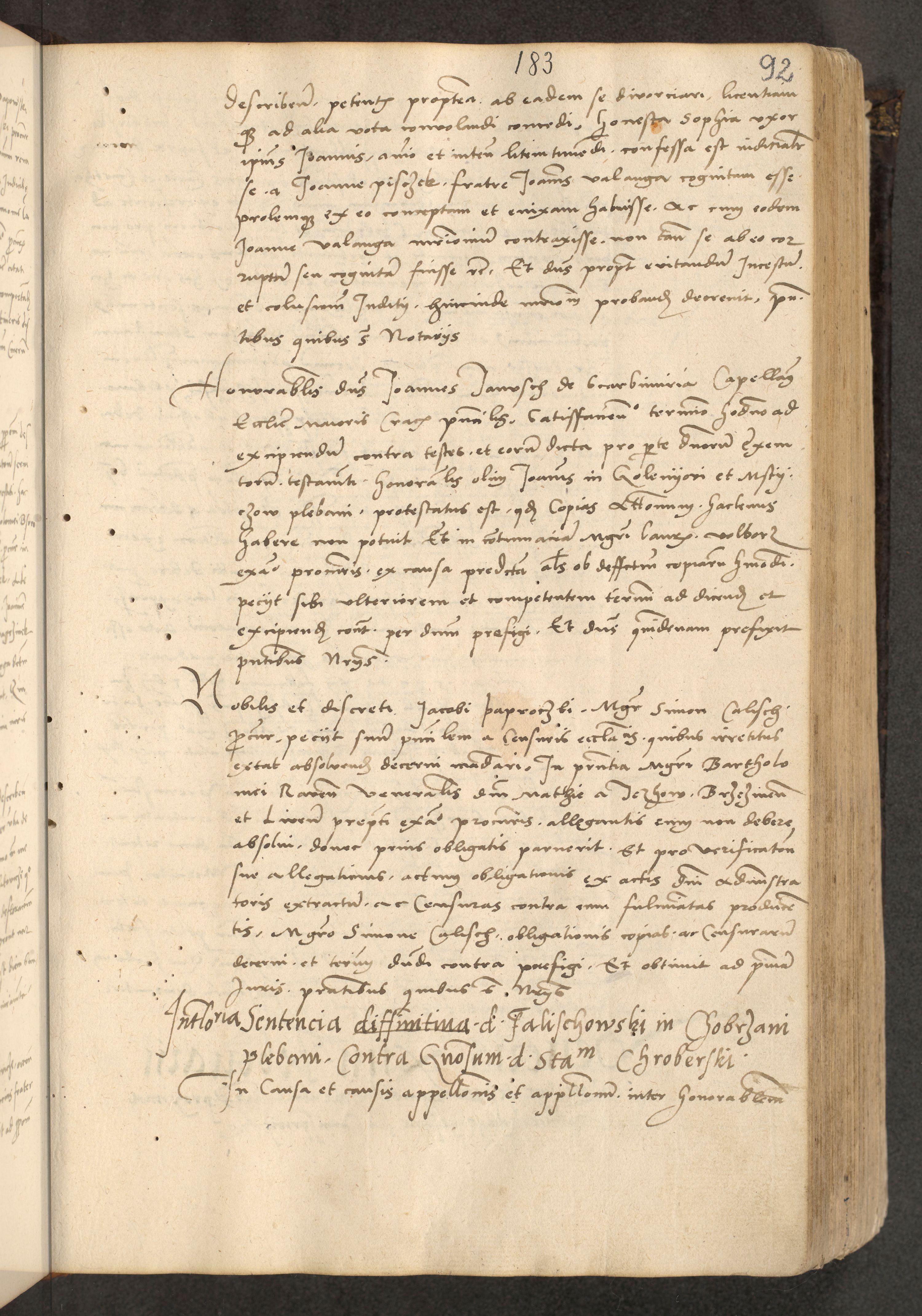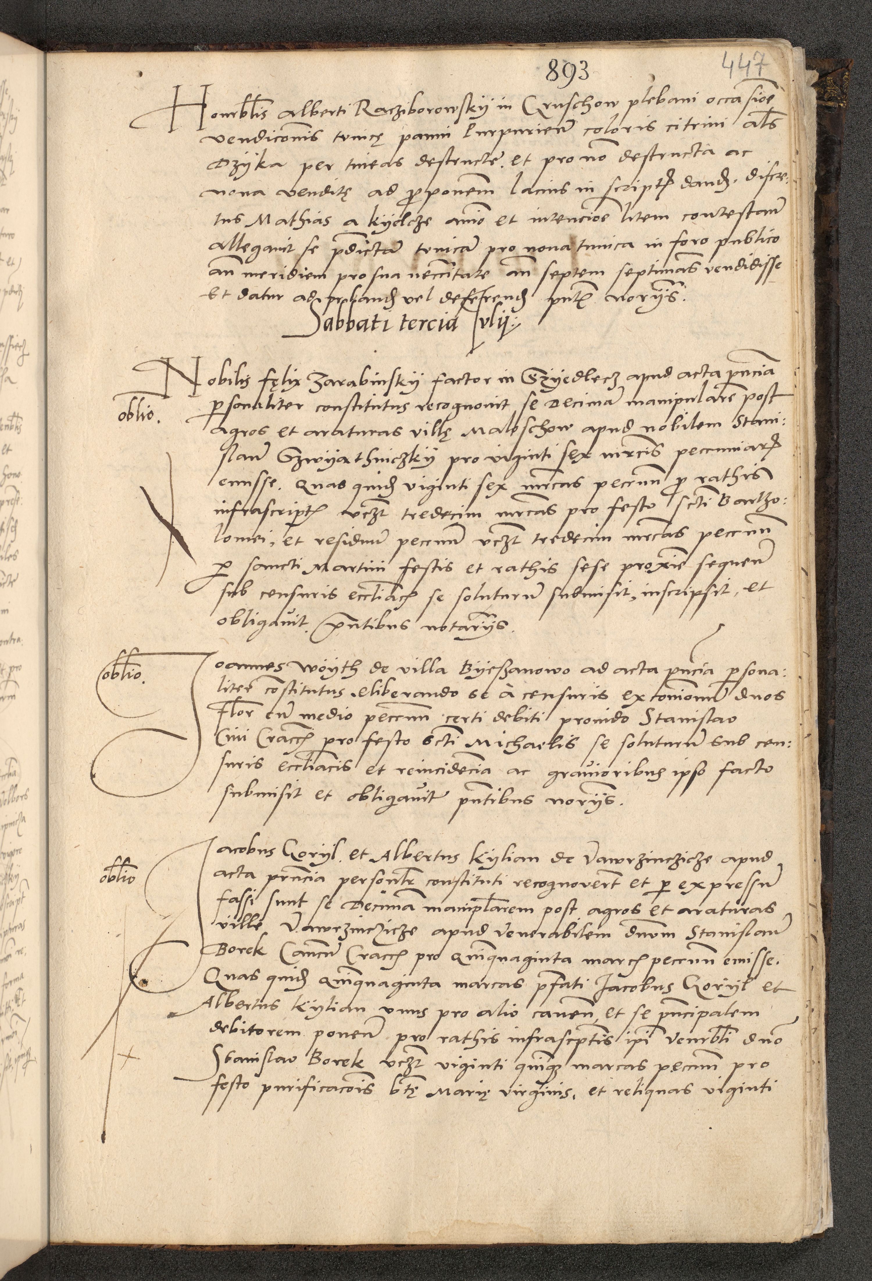 Acta actorum causarum, sentenciarum et obligationum coram reverendo patre domino Thoma Roznowski canonico et reverendissimi in Christo patris et domini domini Patri Dei gratia Cracoviensis. Sabbato, 26 Octobris in ecclesiam suam solenniter recepti officialis generalis Cracoviensis dinita administratura, qua fungebatur post mortem reverendissimi olim felicis recordationis domini Joannis Choiecki episcopi Cracoviensis et Regni Polonie cancelarii anno presenti currenti videlicet 1538, die 11 Marcii Piotrcovie in comiciis celebratis circiter 23 horam defuncti sepulto corpore nona eiusdemque obsequiis X respective Aprilis peractis electo sub indictione XI, pontificatu vero sanctissimi in Christo patris et domini nostri domini Pauli divina providencia pape tercii foeliciter moderni, anno quarto, incepta felicibus auspiciis continuantur ordine processu infrascripto