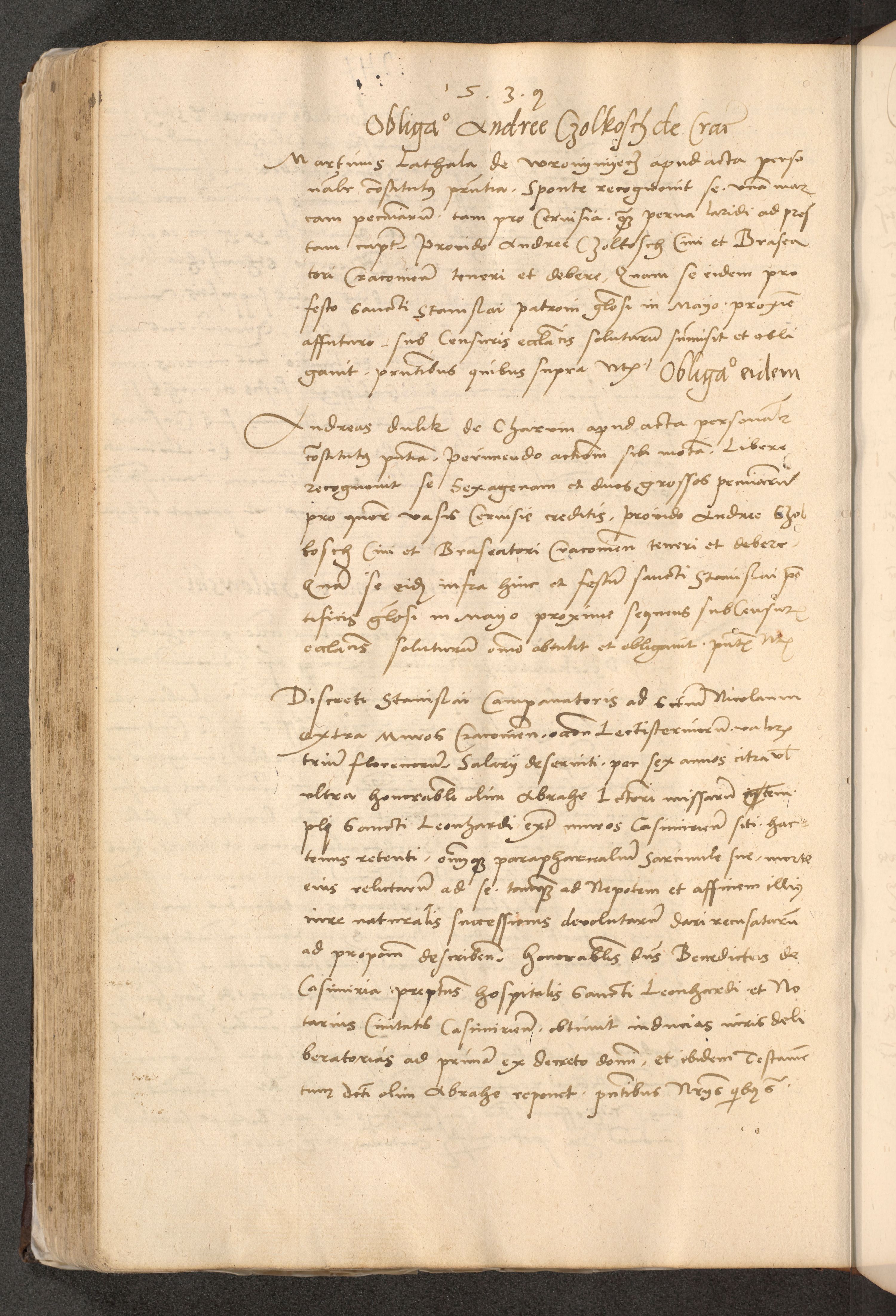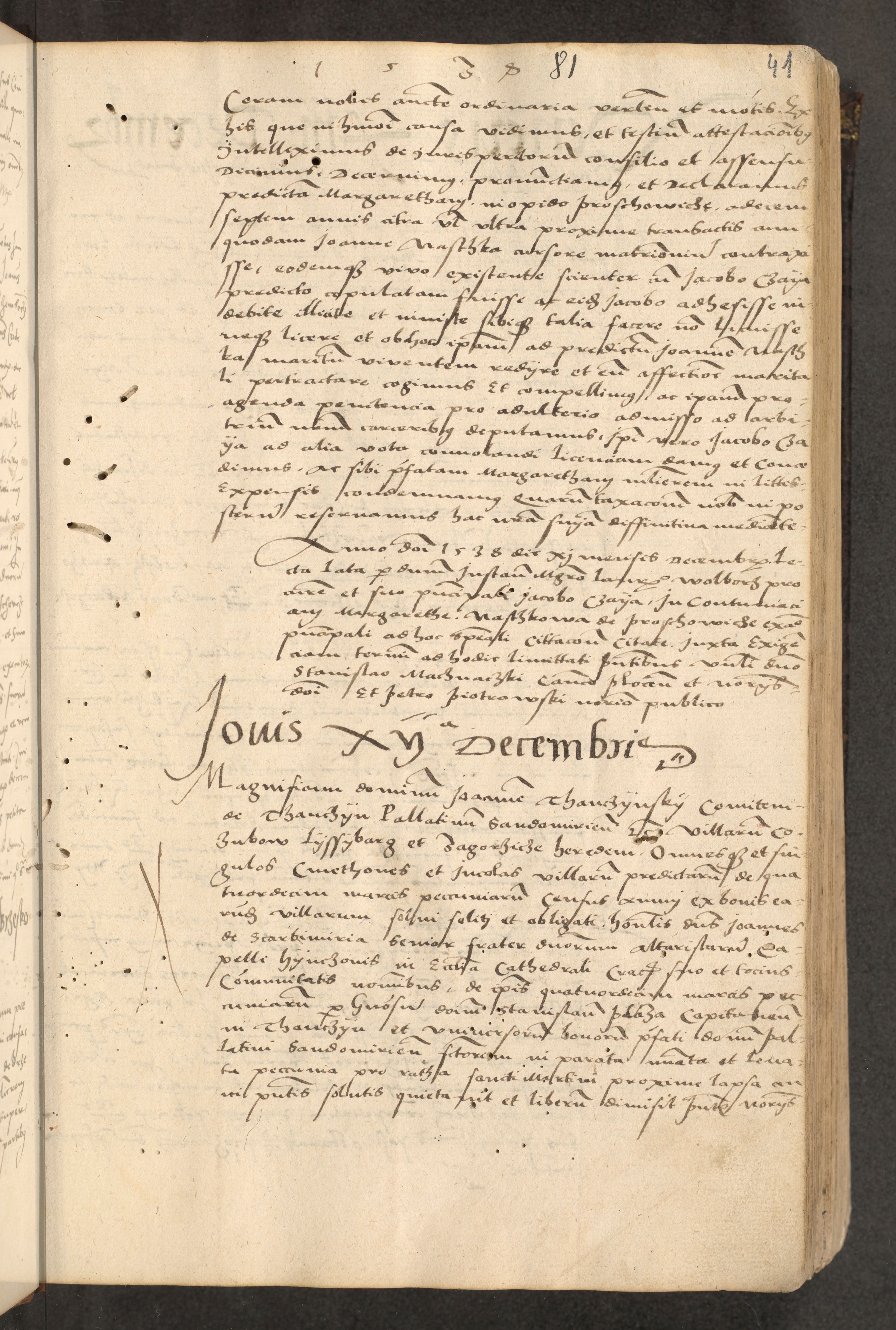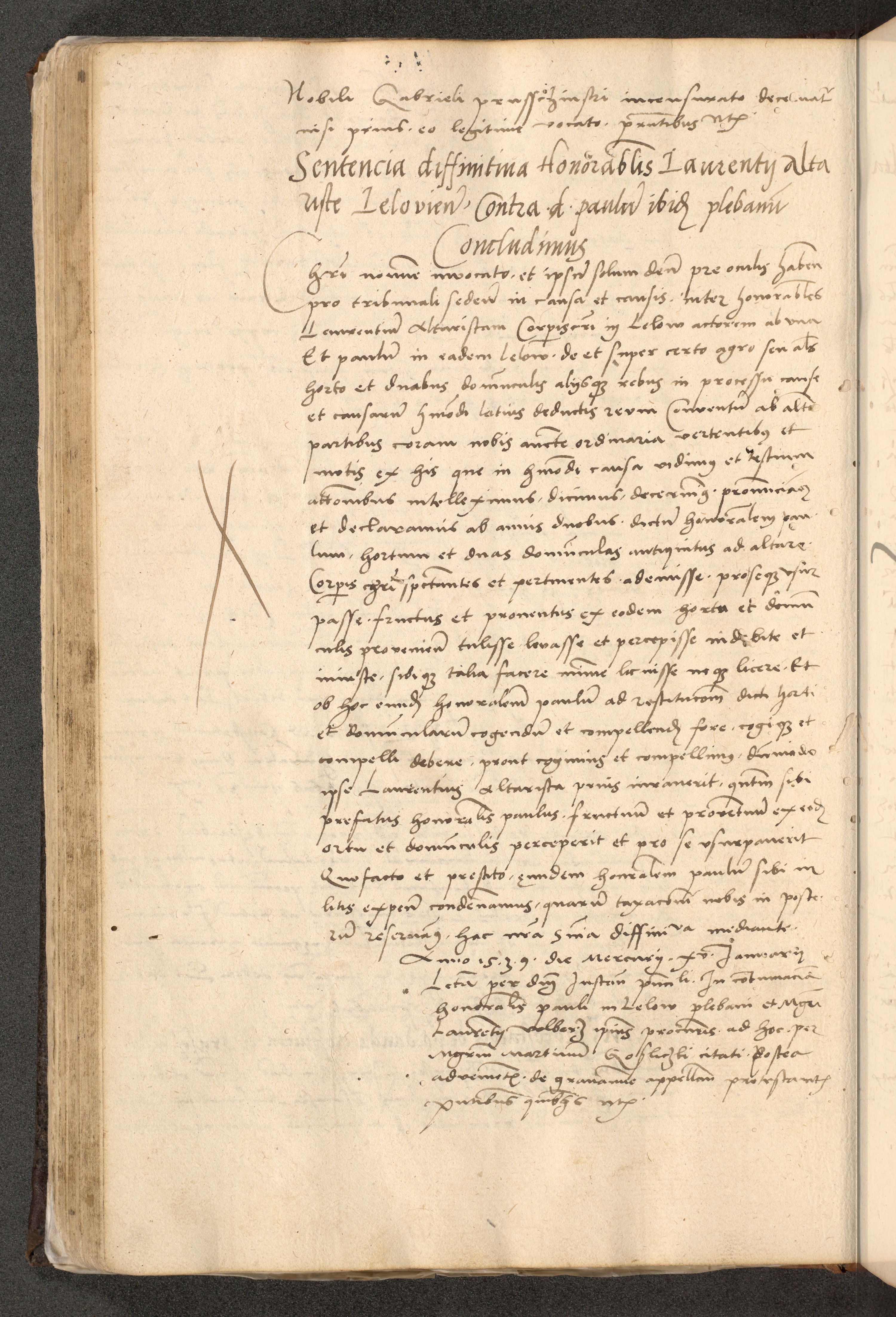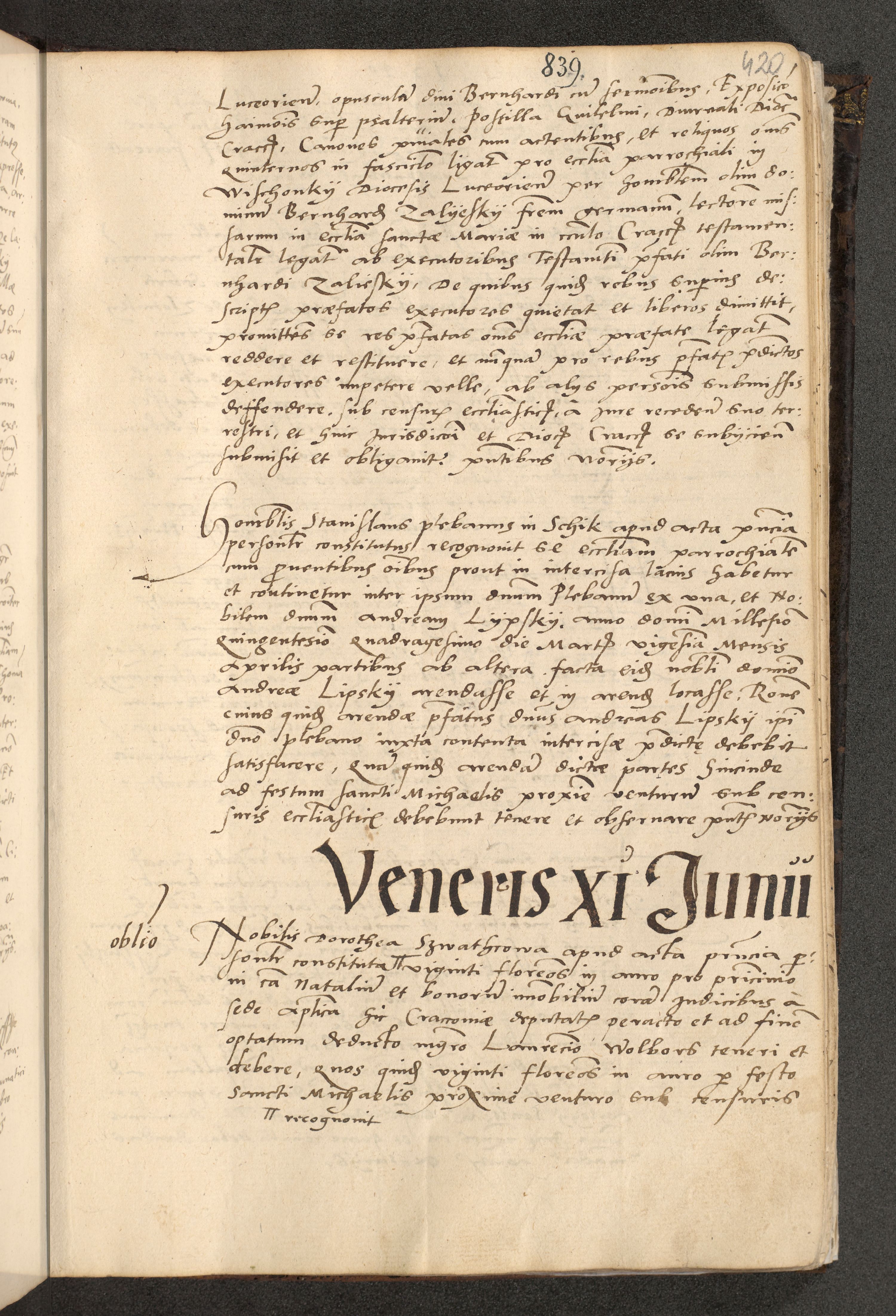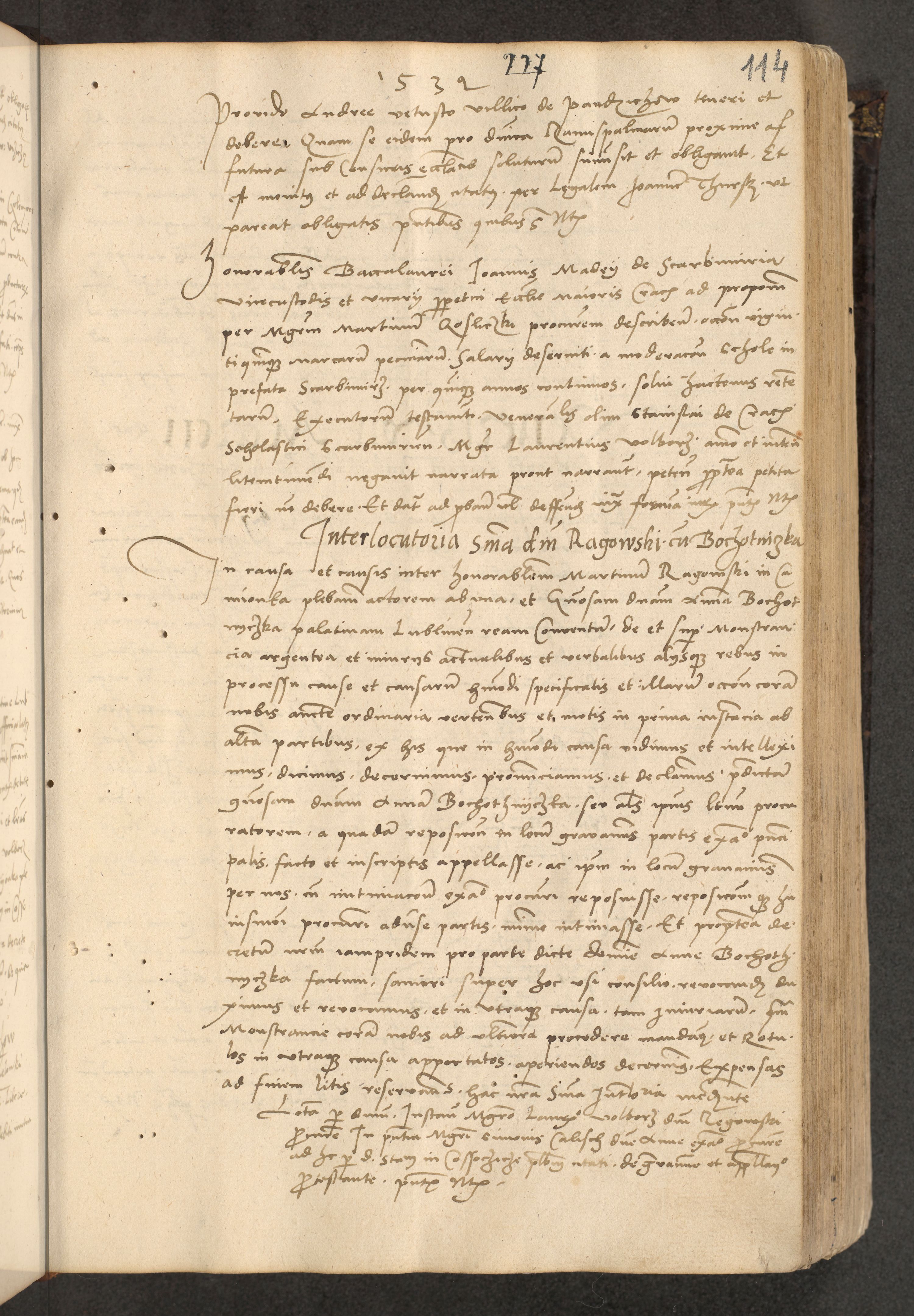 Acta actorum causarum, sentenciarum et obligationum coram reverendo patre domino Thoma Roznowski canonico et reverendissimi in Christo patris et domini domini Patri Dei gratia Cracoviensis. Sabbato, 26 Octobris in ecclesiam suam solenniter recepti officialis generalis Cracoviensis dinita administratura, qua fungebatur post mortem reverendissimi olim felicis recordationis domini Joannis Choiecki episcopi Cracoviensis et Regni Polonie cancelarii anno presenti currenti videlicet 1538, die 11 Marcii Piotrcovie in comiciis celebratis circiter 23 horam defuncti sepulto corpore nona eiusdemque obsequiis X respective Aprilis peractis electo sub indictione XI, pontificatu vero sanctissimi in Christo patris et domini nostri domini Pauli divina providencia pape tercii foeliciter moderni, anno quarto, incepta felicibus auspiciis continuantur ordine processu infrascripto