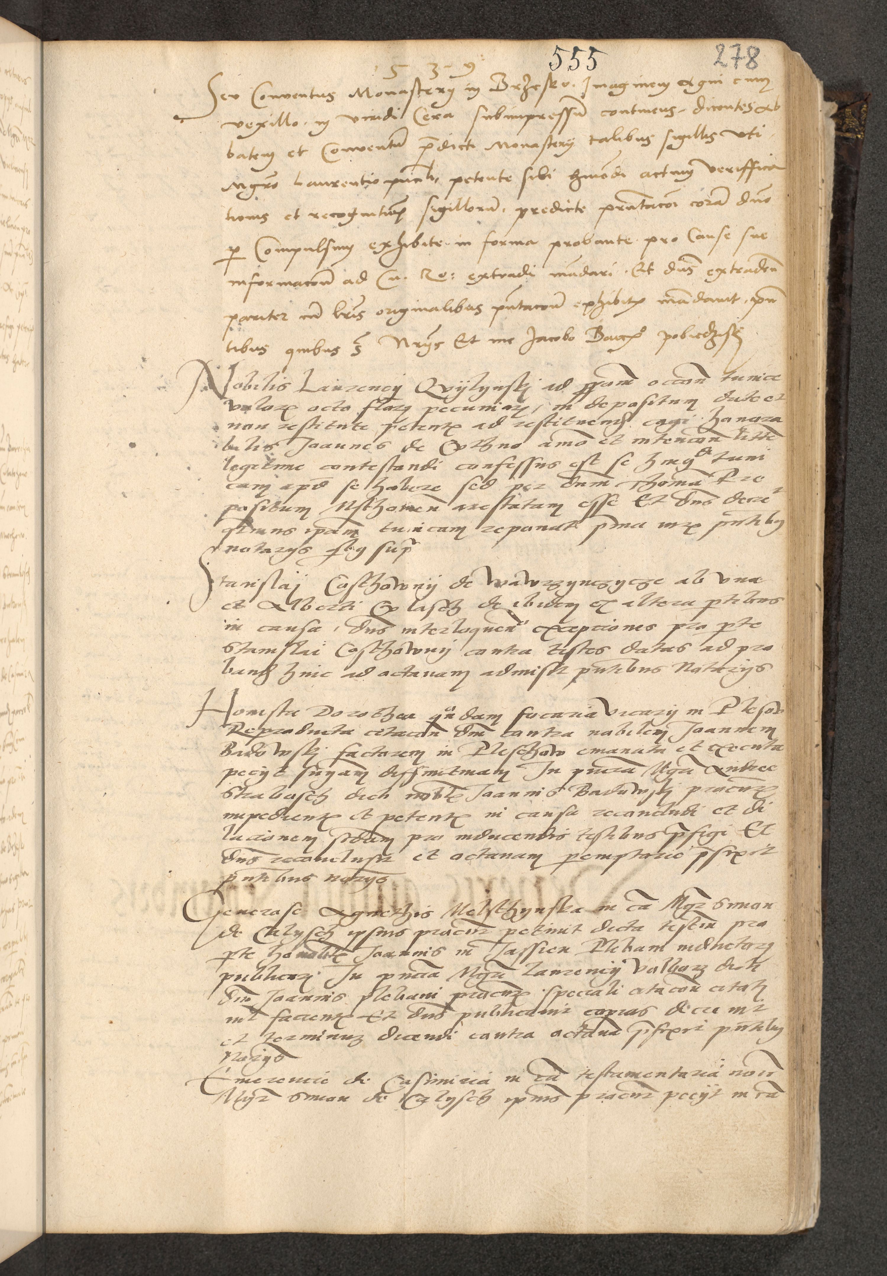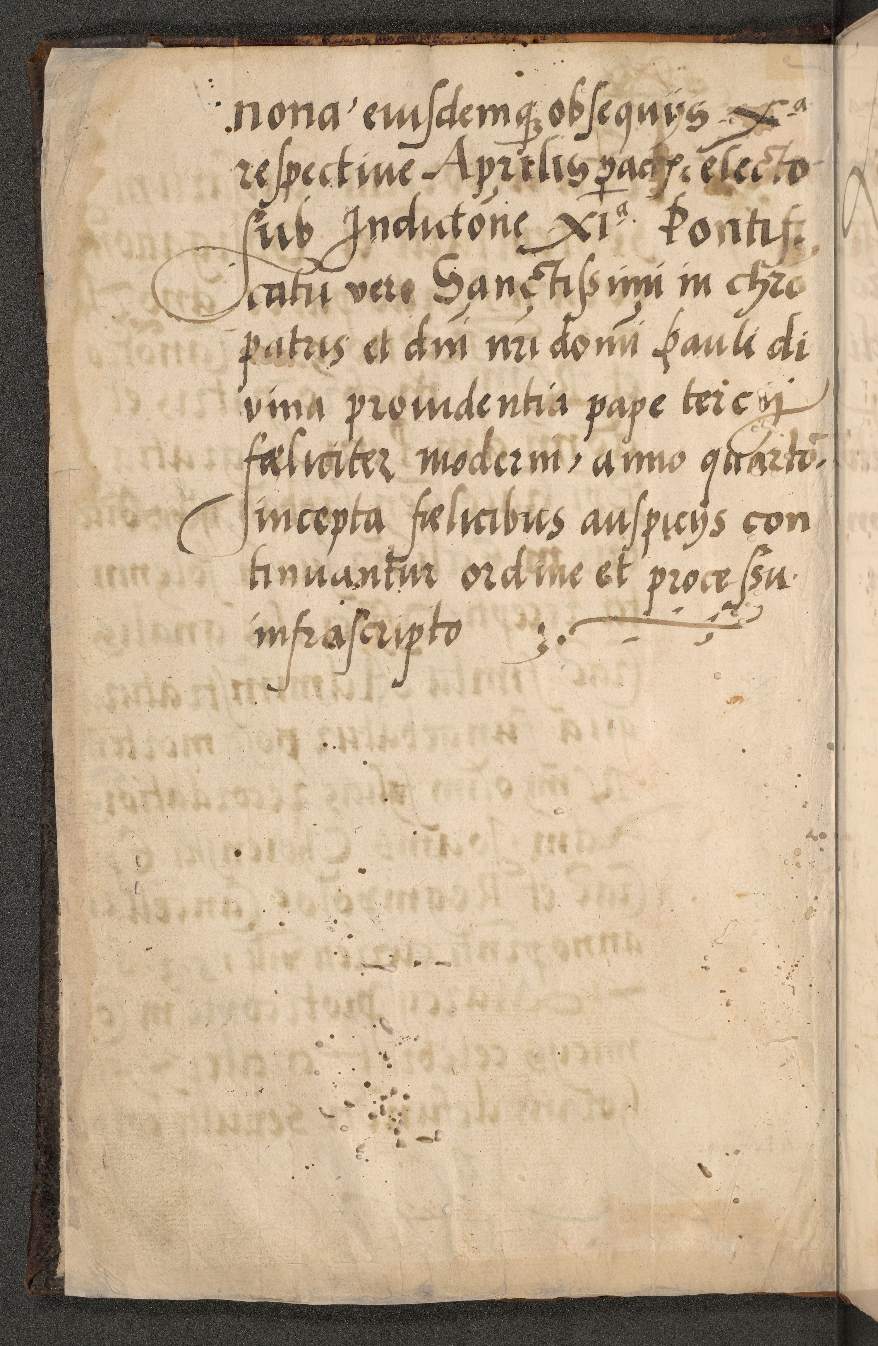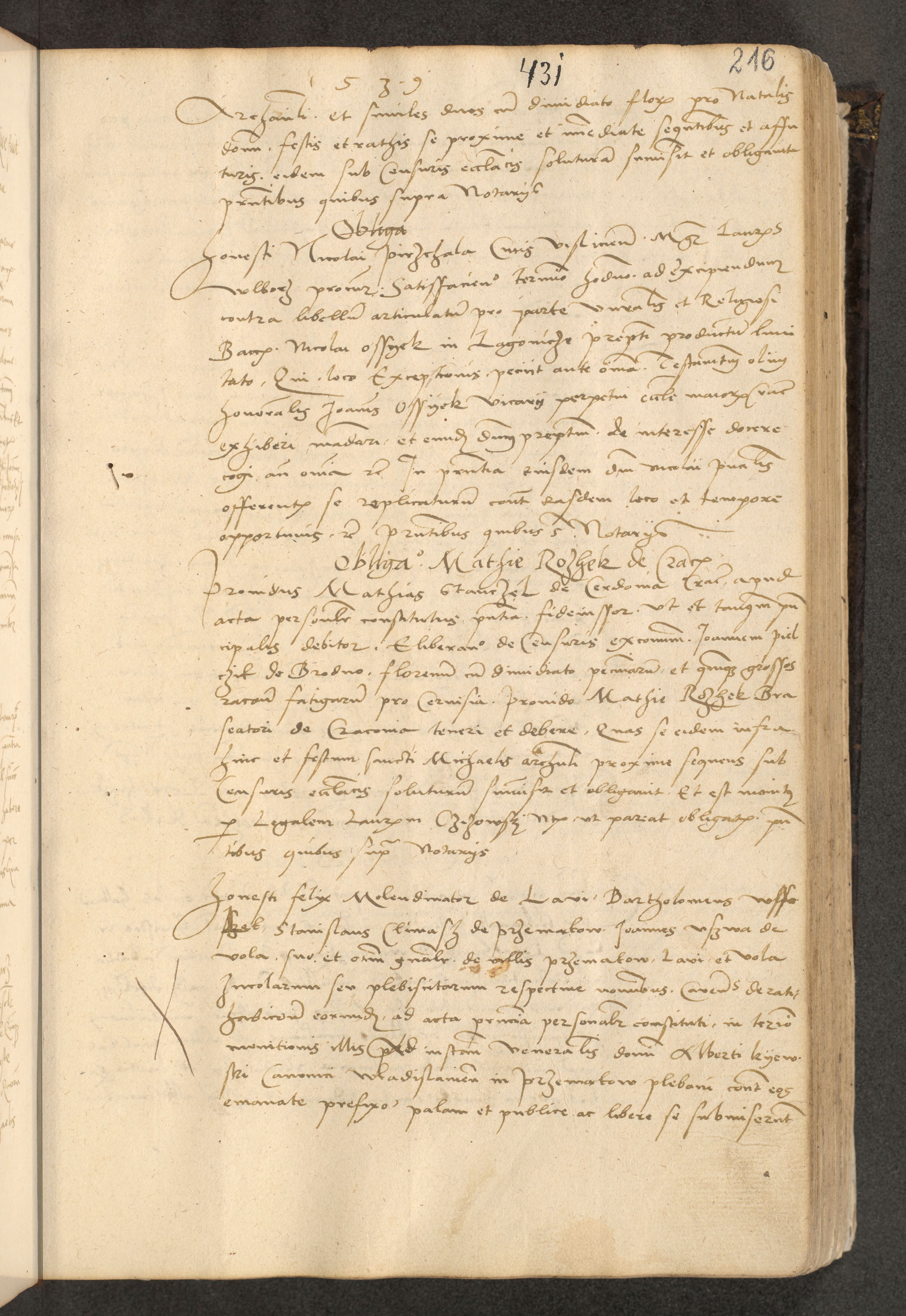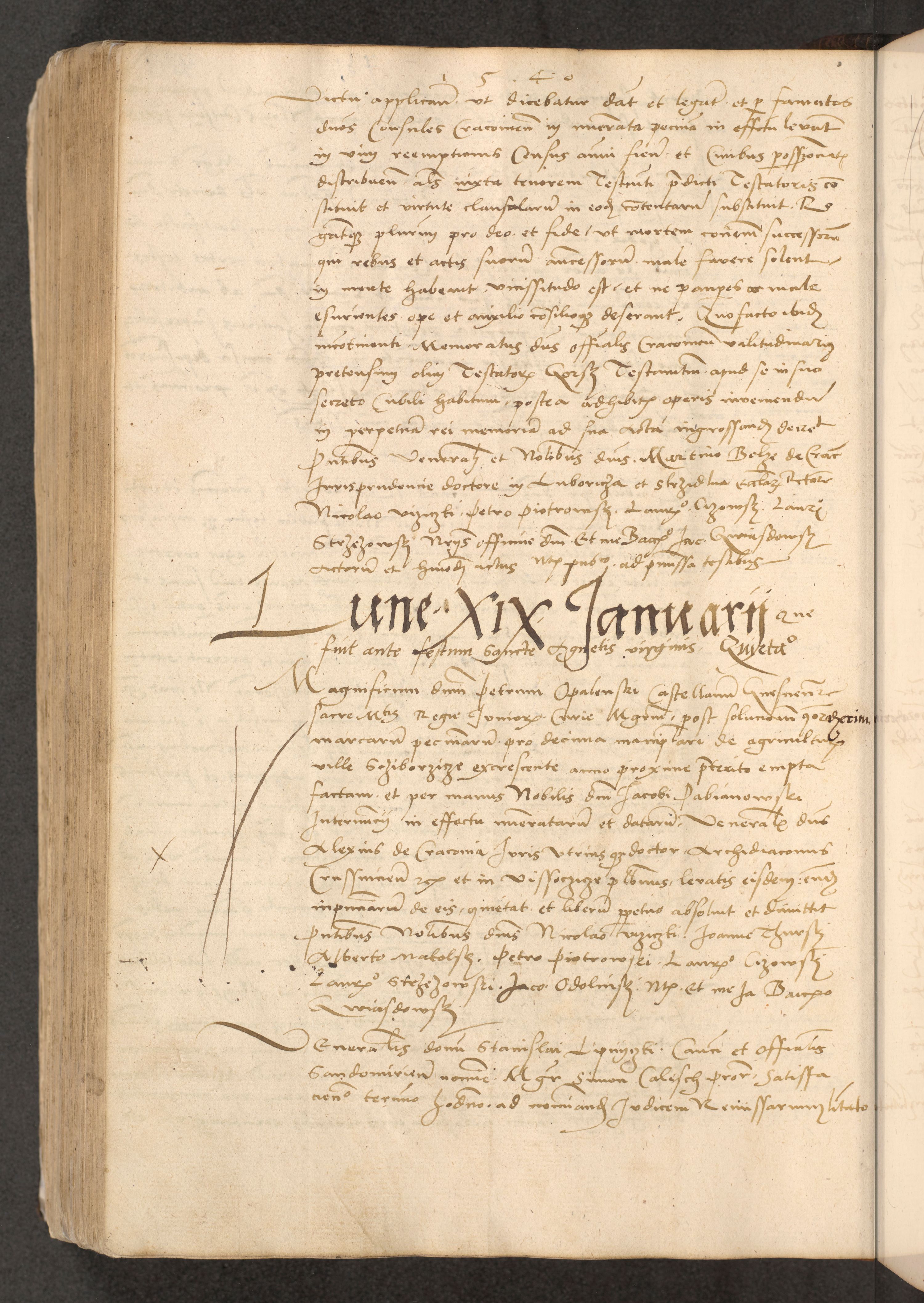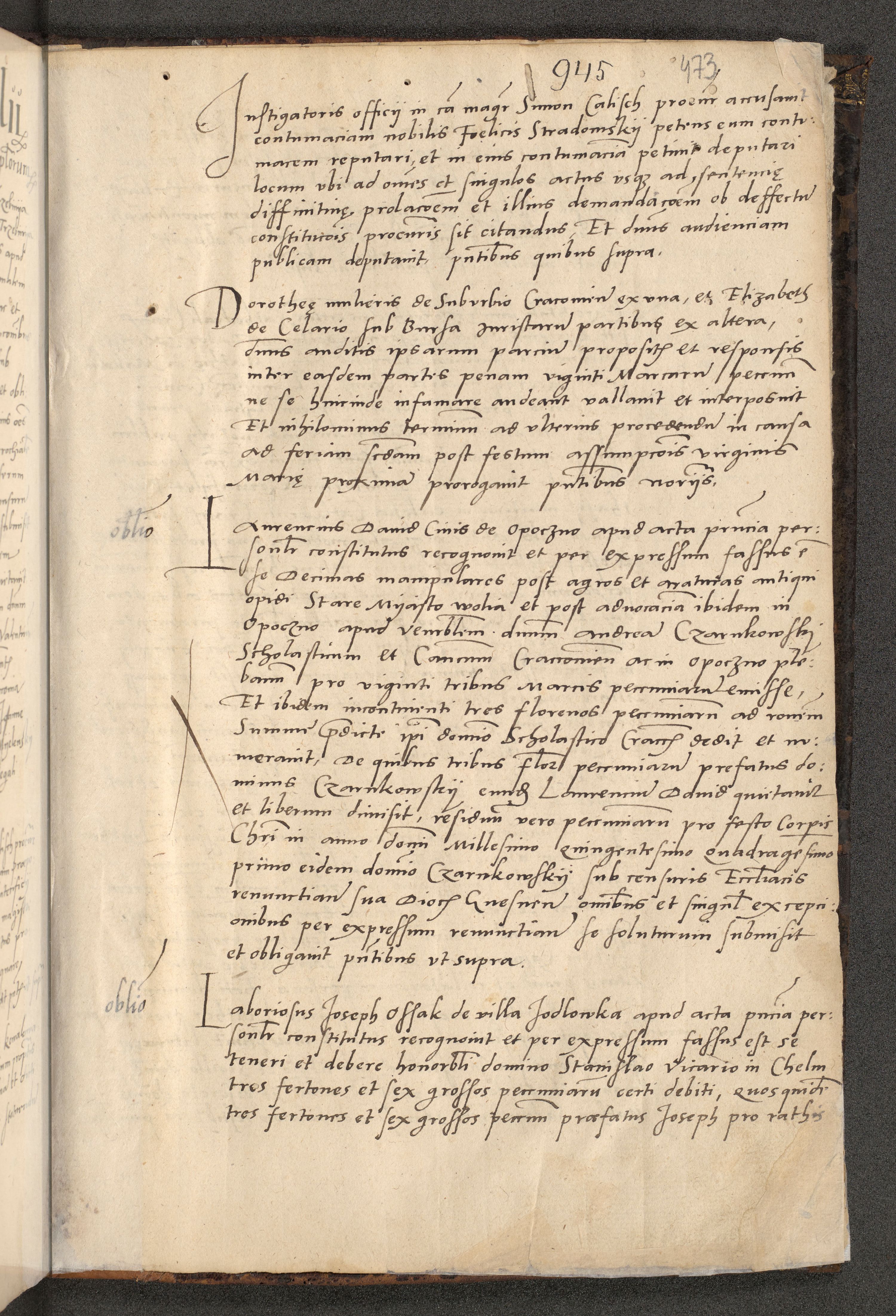 Acta actorum causarum, sentenciarum et obligationum coram reverendo patre domino Thoma Roznowski canonico et reverendissimi in Christo patris et domini domini Patri Dei gratia Cracoviensis. Sabbato, 26 Octobris in ecclesiam suam solenniter recepti officialis generalis Cracoviensis dinita administratura, qua fungebatur post mortem reverendissimi olim felicis recordationis domini Joannis Choiecki episcopi Cracoviensis et Regni Polonie cancelarii anno presenti currenti videlicet 1538, die 11 Marcii Piotrcovie in comiciis celebratis circiter 23 horam defuncti sepulto corpore nona eiusdemque obsequiis X respective Aprilis peractis electo sub indictione XI, pontificatu vero sanctissimi in Christo patris et domini nostri domini Pauli divina providencia pape tercii foeliciter moderni, anno quarto, incepta felicibus auspiciis continuantur ordine processu infrascripto