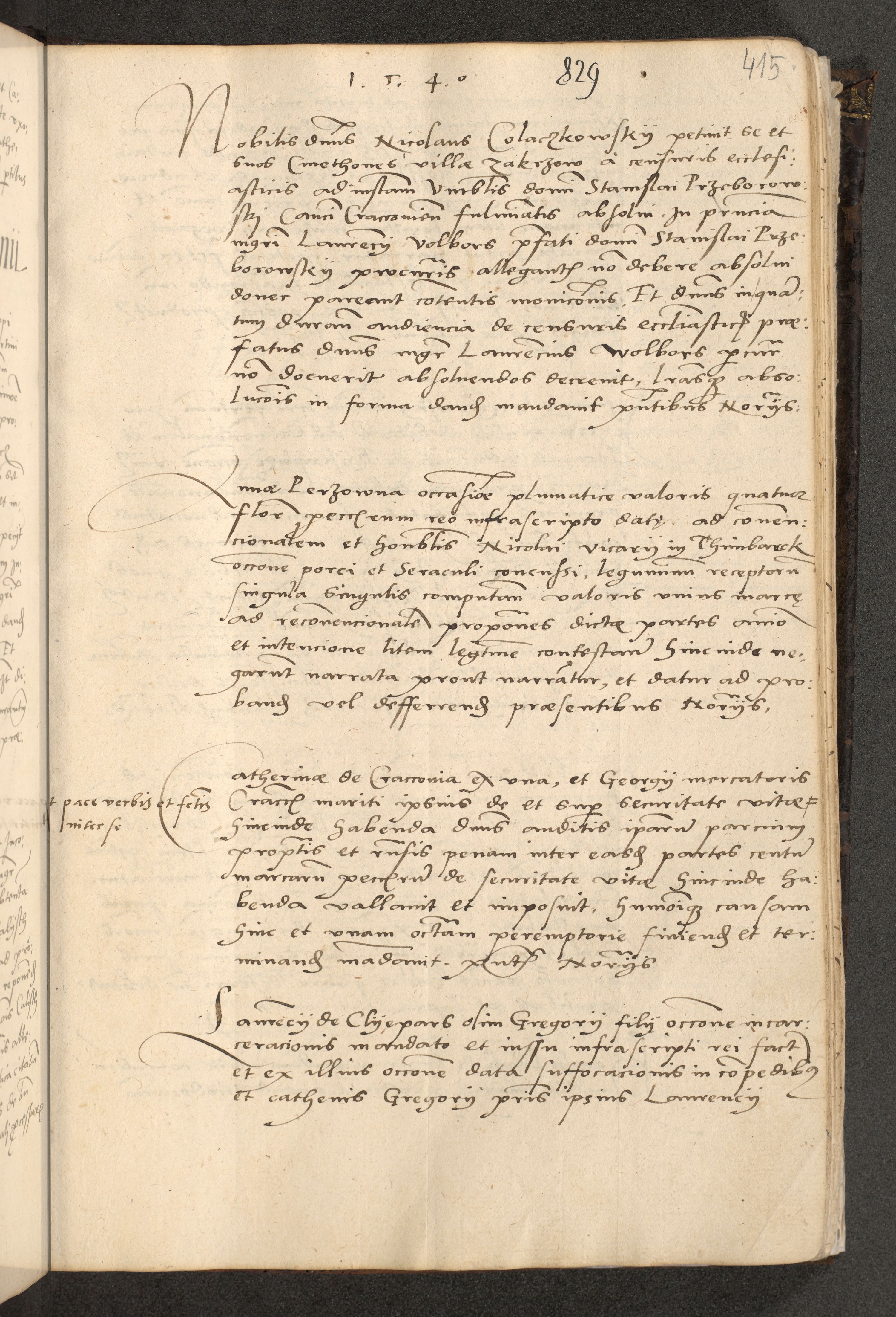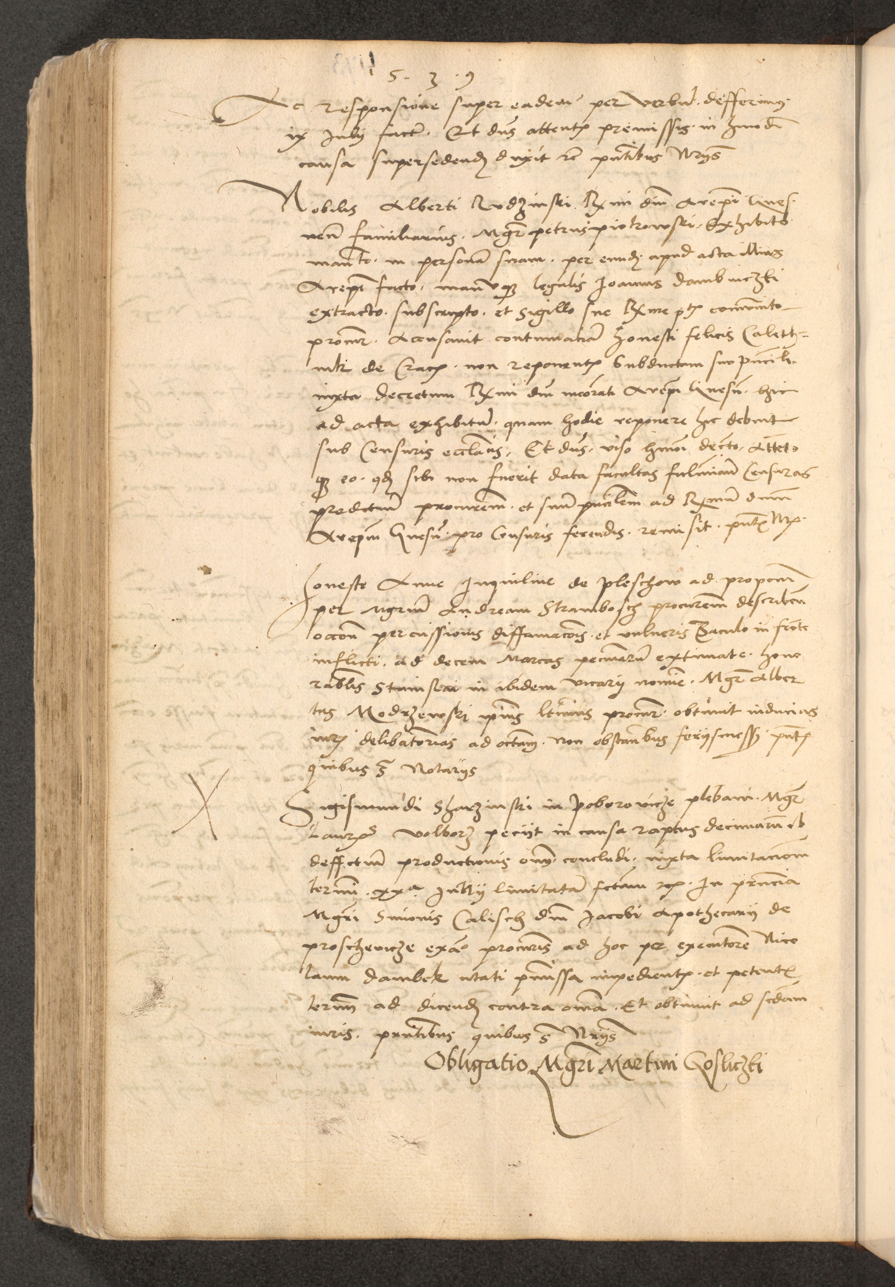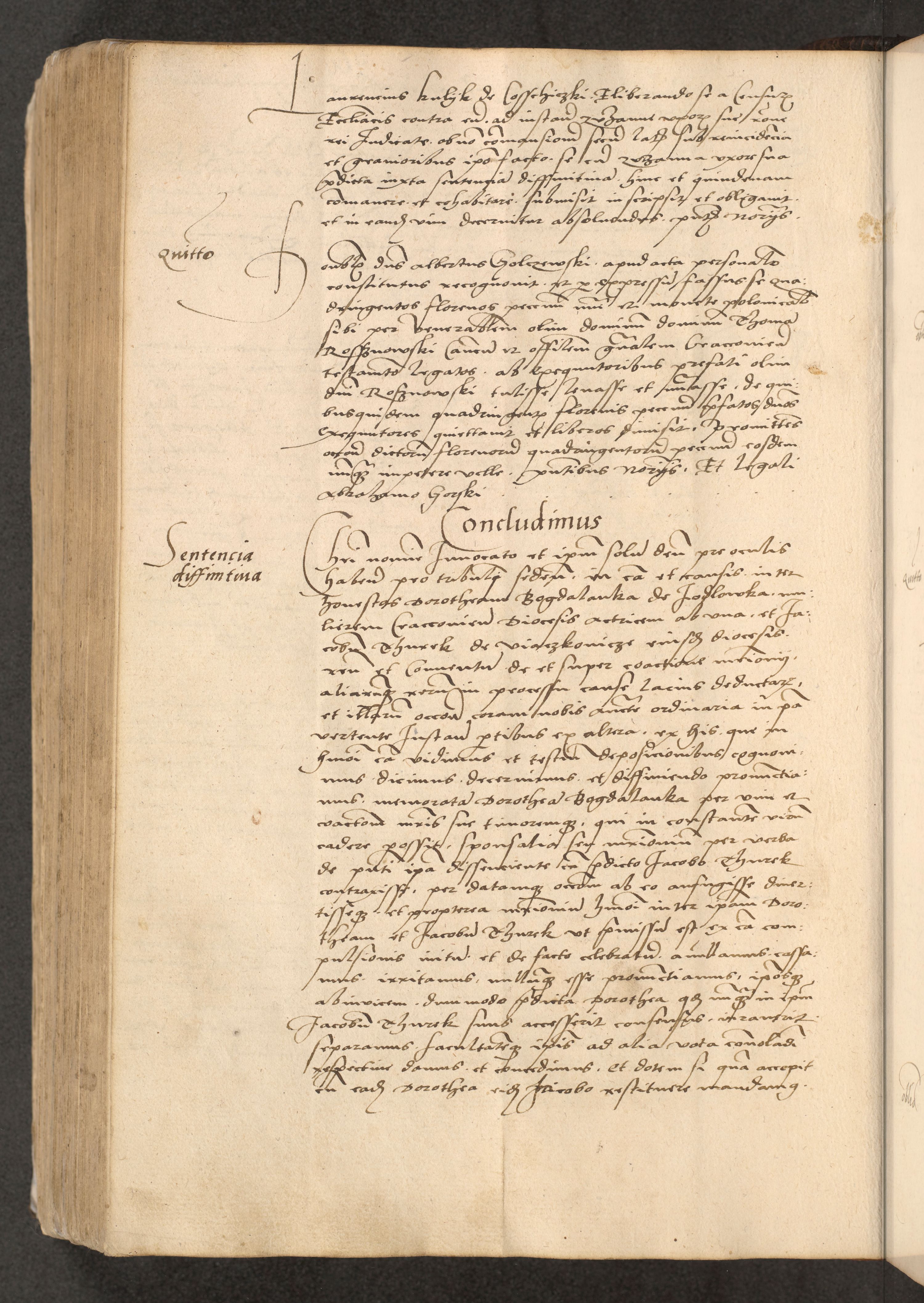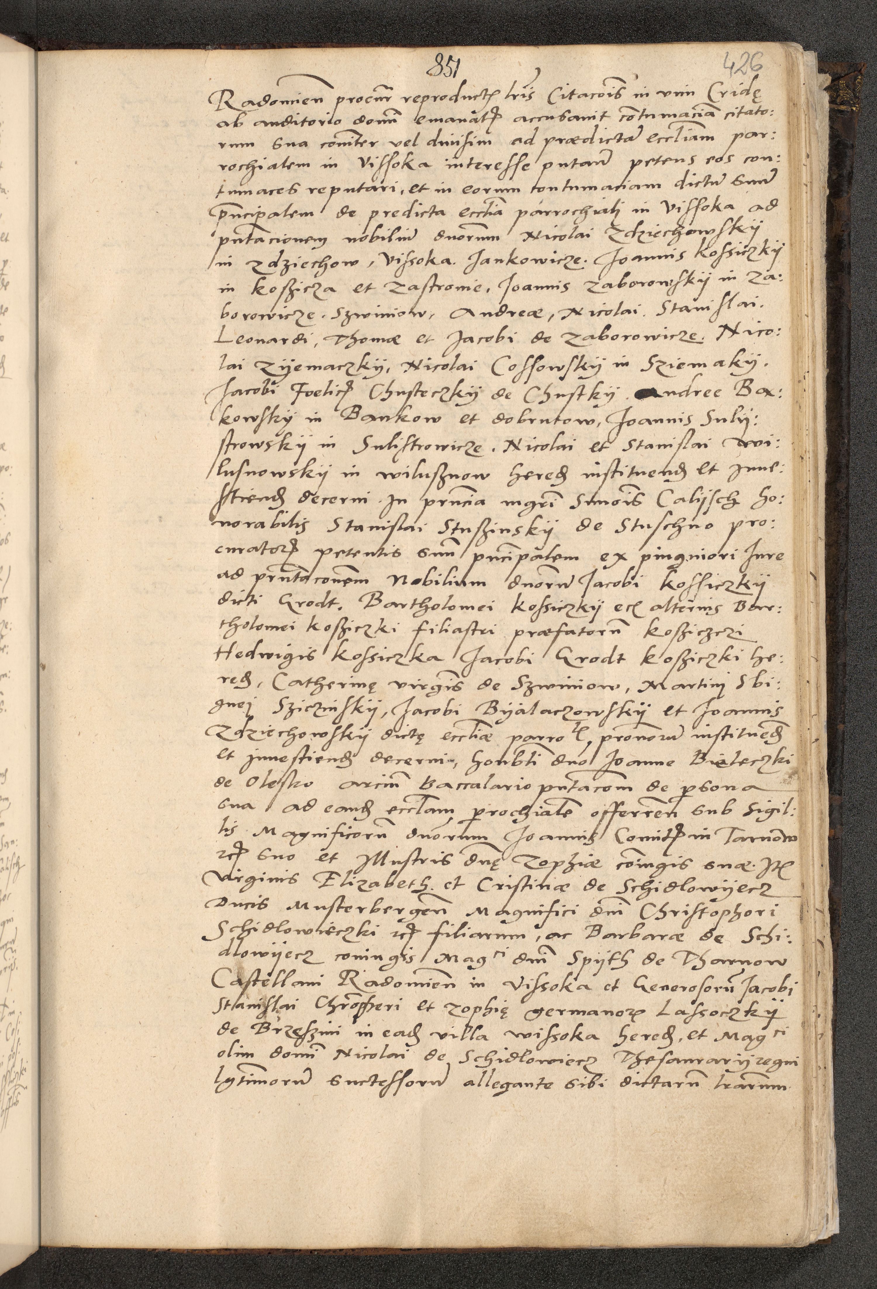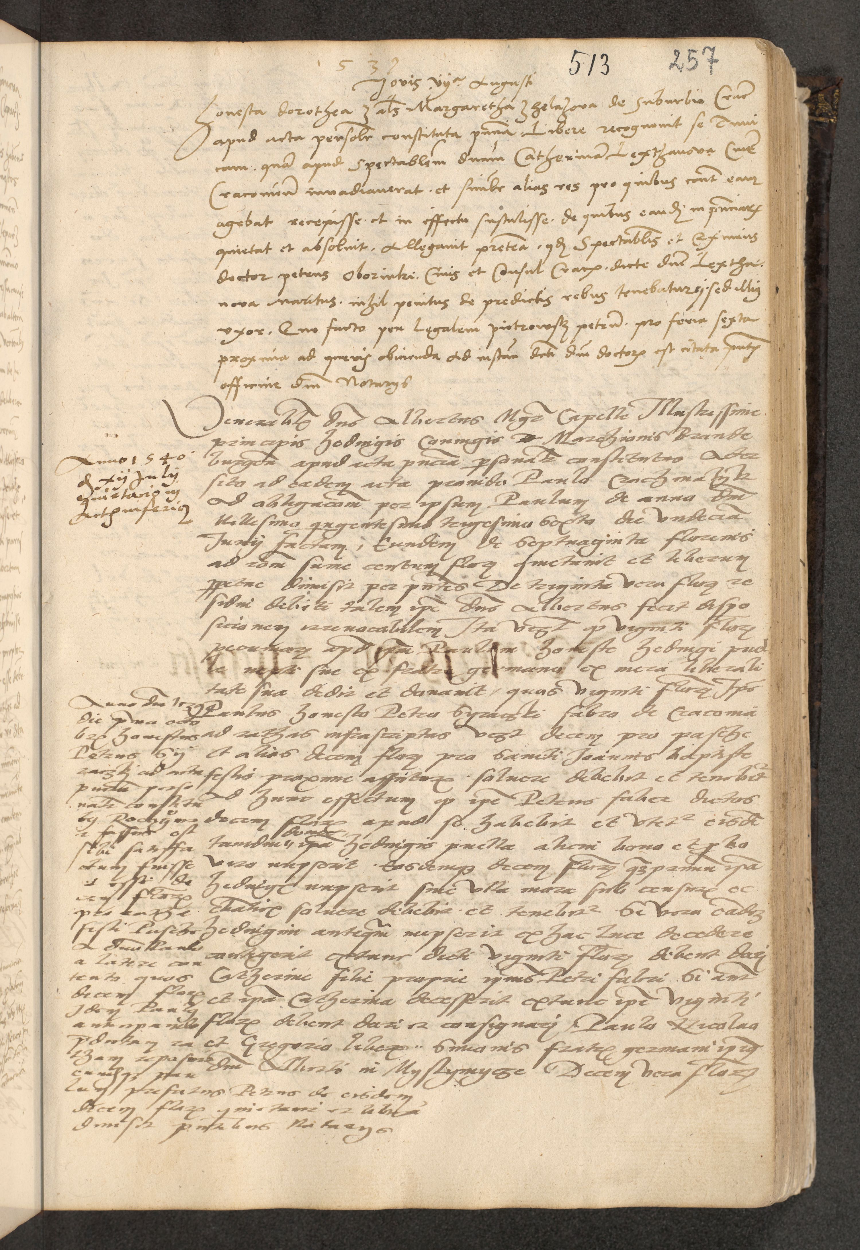 Acta actorum causarum, sentenciarum et obligationum coram reverendo patre domino Thoma Roznowski canonico et reverendissimi in Christo patris et domini domini Patri Dei gratia Cracoviensis. Sabbato, 26 Octobris in ecclesiam suam solenniter recepti officialis generalis Cracoviensis dinita administratura, qua fungebatur post mortem reverendissimi olim felicis recordationis domini Joannis Choiecki episcopi Cracoviensis et Regni Polonie cancelarii anno presenti currenti videlicet 1538, die 11 Marcii Piotrcovie in comiciis celebratis circiter 23 horam defuncti sepulto corpore nona eiusdemque obsequiis X respective Aprilis peractis electo sub indictione XI, pontificatu vero sanctissimi in Christo patris et domini nostri domini Pauli divina providencia pape tercii foeliciter moderni, anno quarto, incepta felicibus auspiciis continuantur ordine processu infrascripto