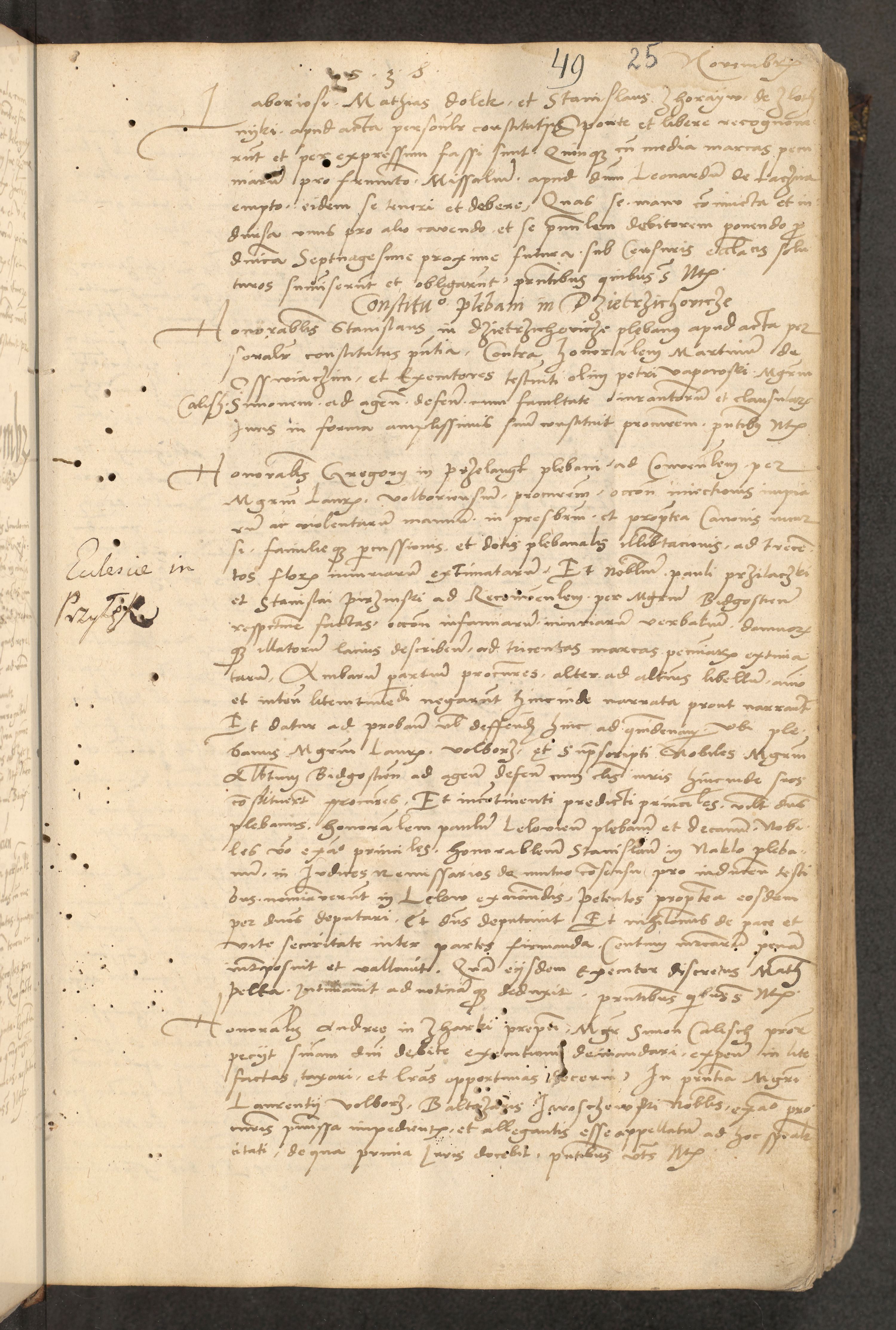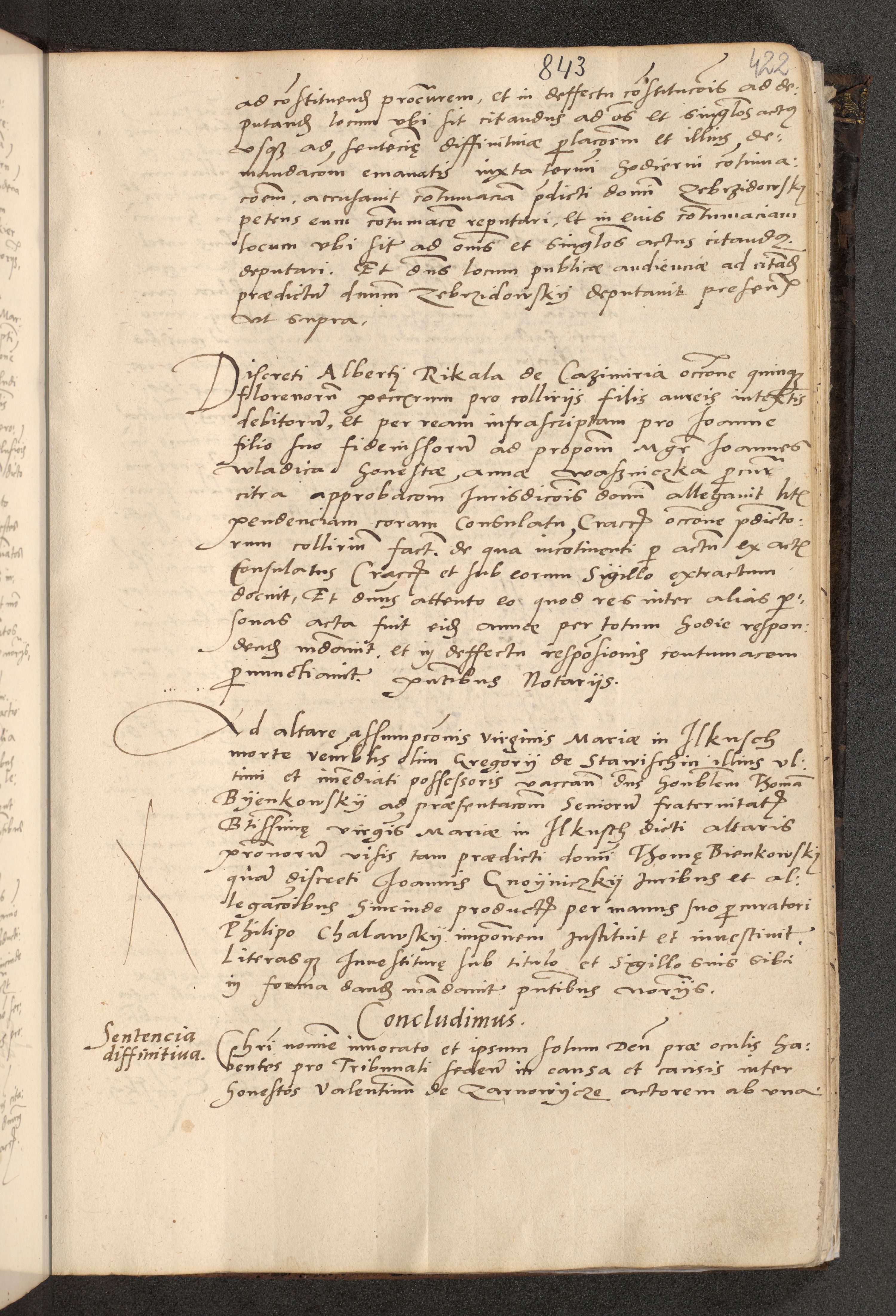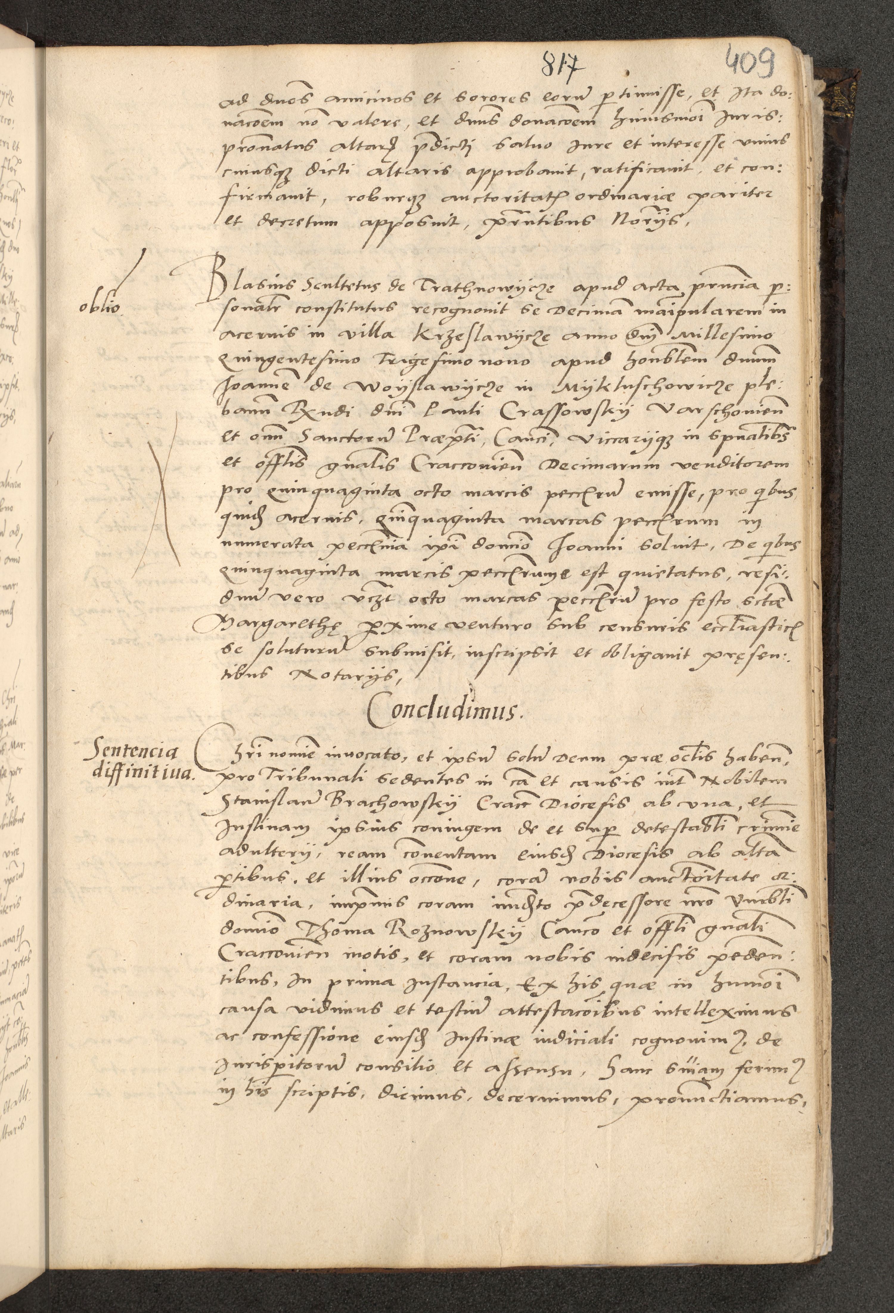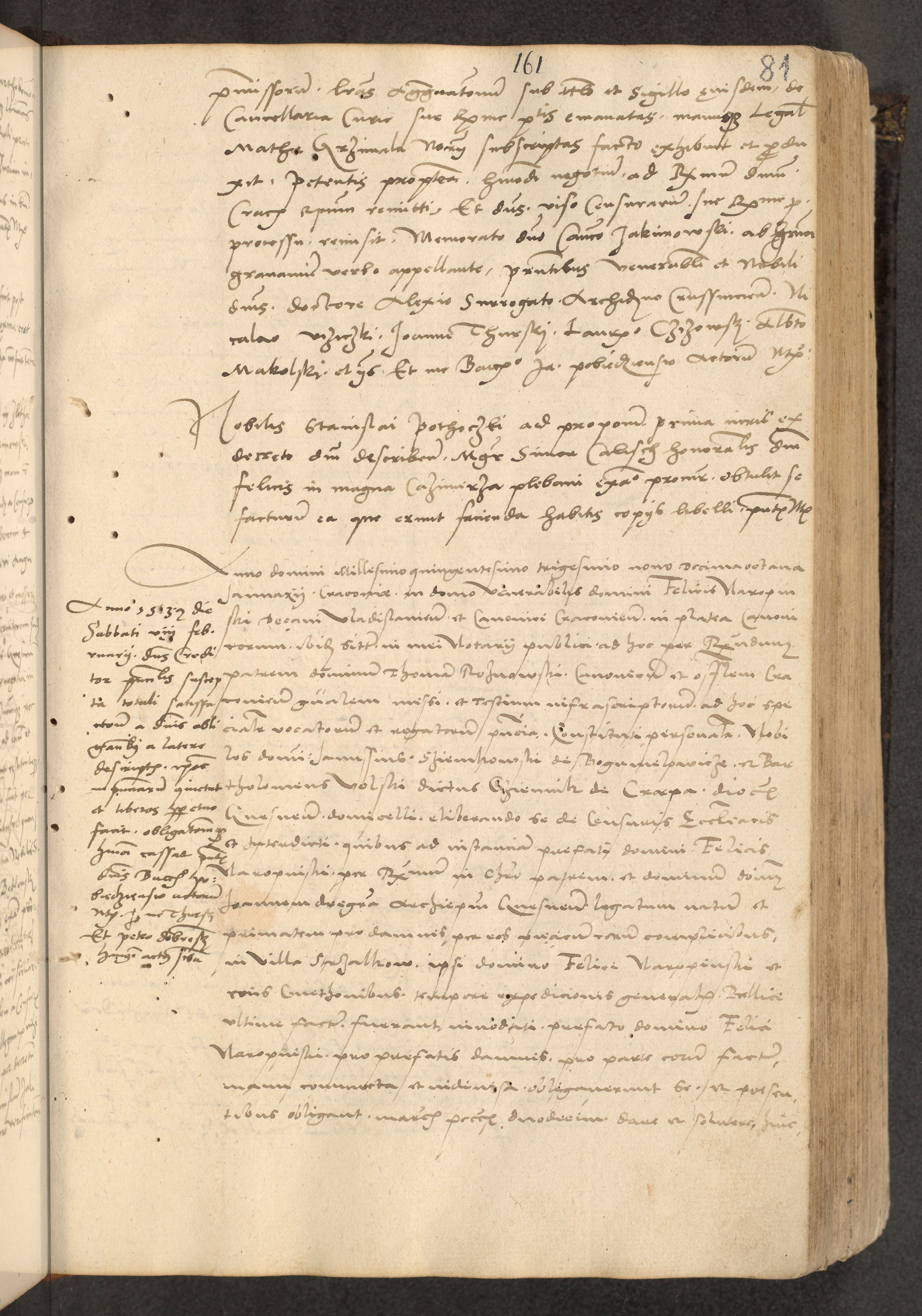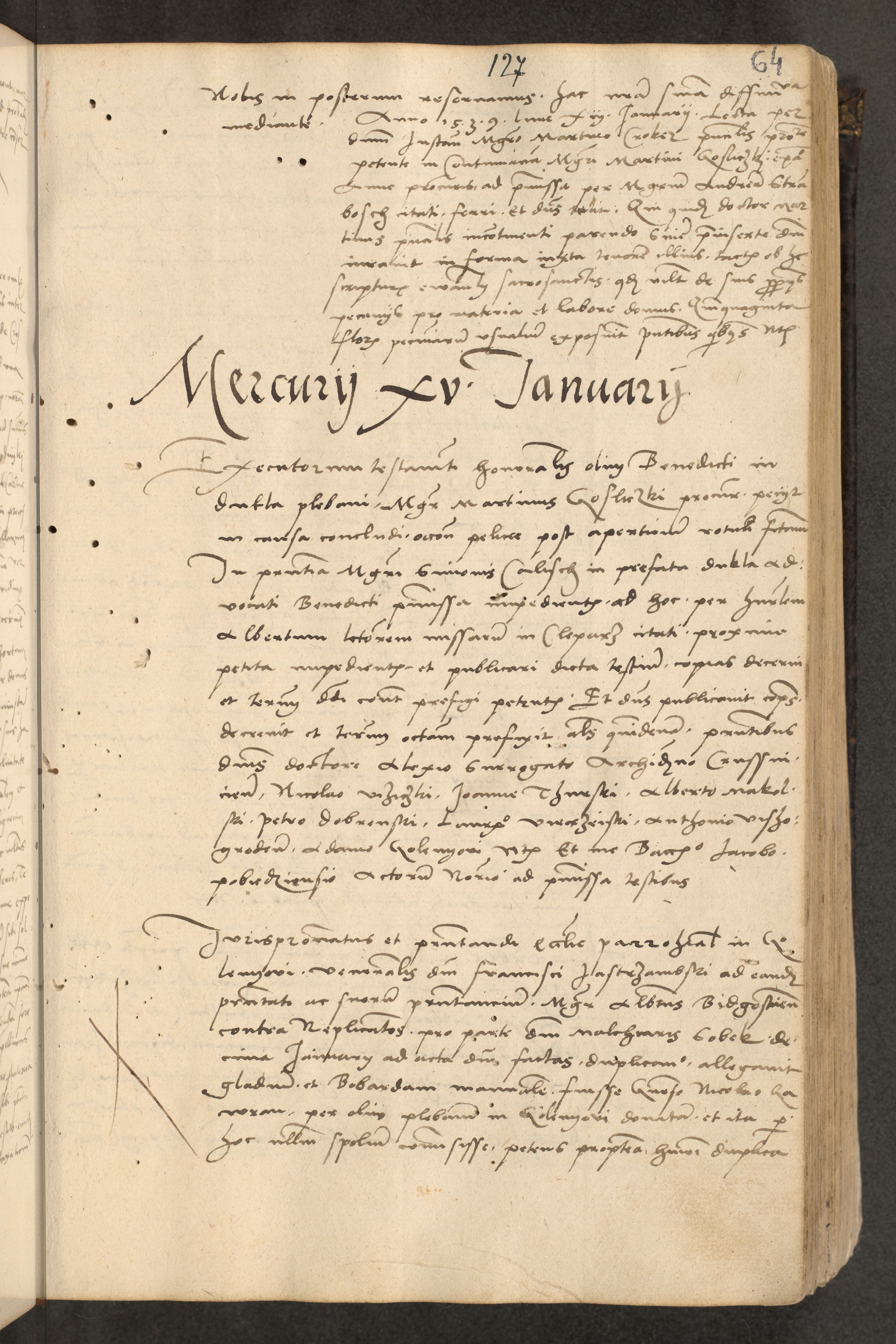 Acta actorum causarum, sentenciarum et obligationum coram reverendo patre domino Thoma Roznowski canonico et reverendissimi in Christo patris et domini domini Patri Dei gratia Cracoviensis. Sabbato, 26 Octobris in ecclesiam suam solenniter recepti officialis generalis Cracoviensis dinita administratura, qua fungebatur post mortem reverendissimi olim felicis recordationis domini Joannis Choiecki episcopi Cracoviensis et Regni Polonie cancelarii anno presenti currenti videlicet 1538, die 11 Marcii Piotrcovie in comiciis celebratis circiter 23 horam defuncti sepulto corpore nona eiusdemque obsequiis X respective Aprilis peractis electo sub indictione XI, pontificatu vero sanctissimi in Christo patris et domini nostri domini Pauli divina providencia pape tercii foeliciter moderni, anno quarto, incepta felicibus auspiciis continuantur ordine processu infrascripto