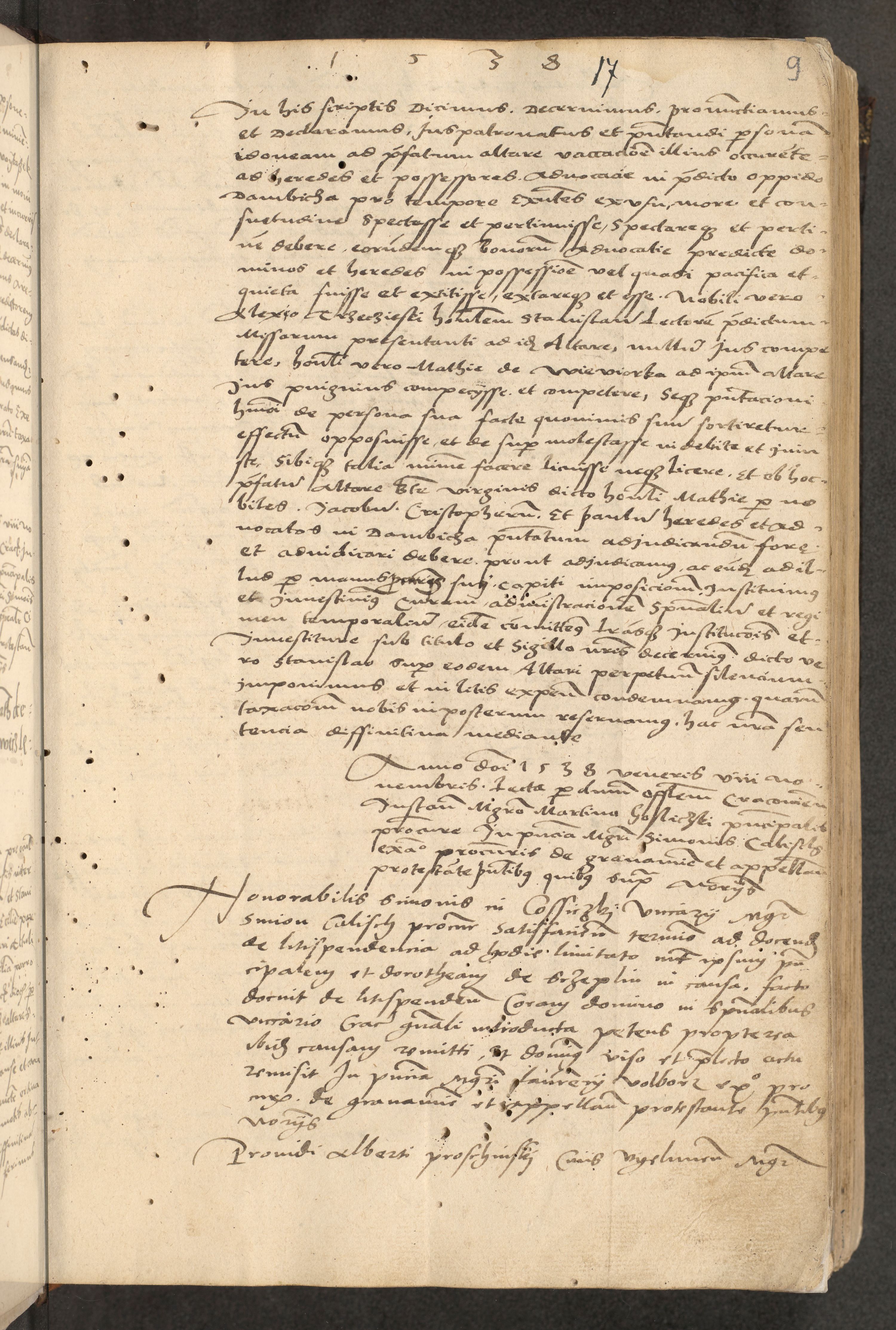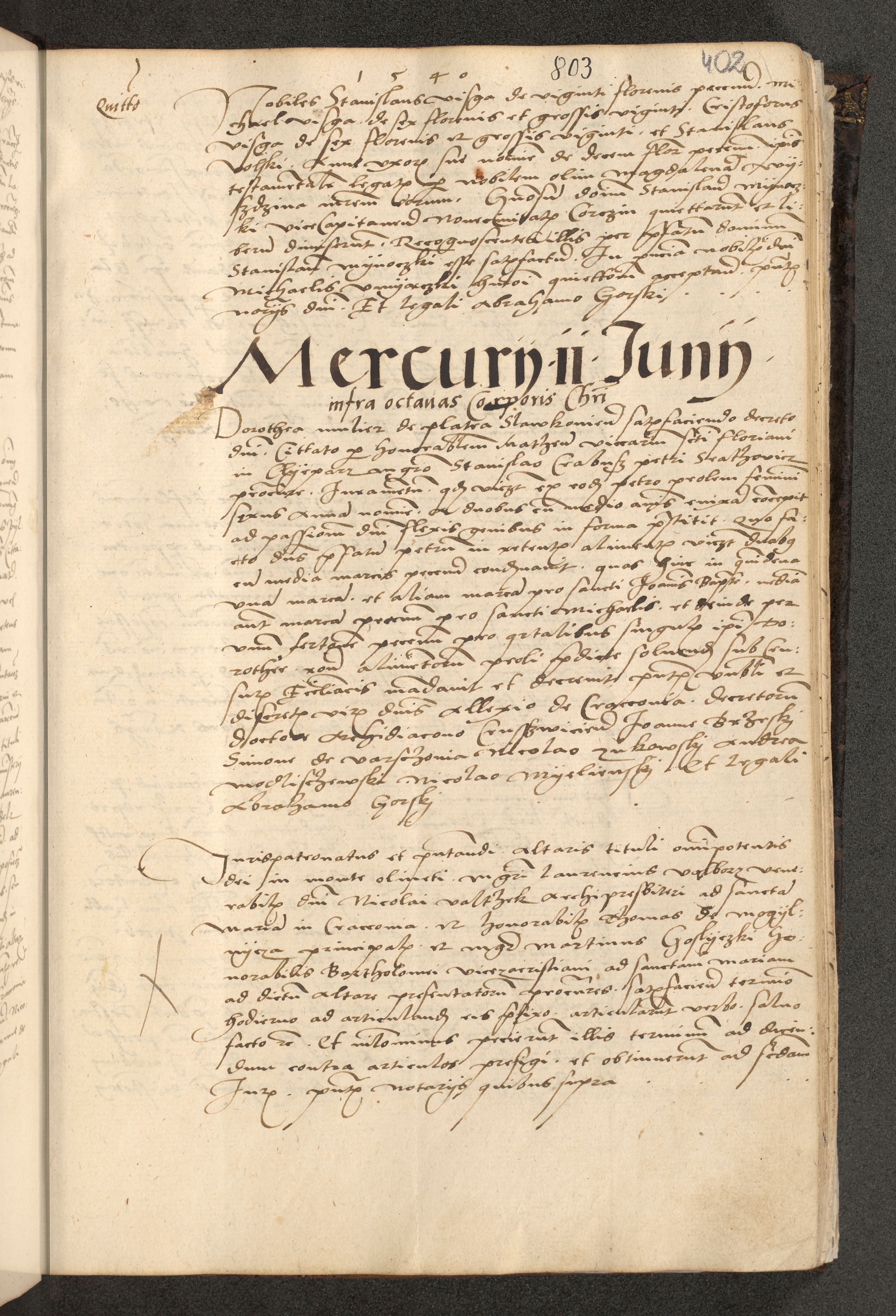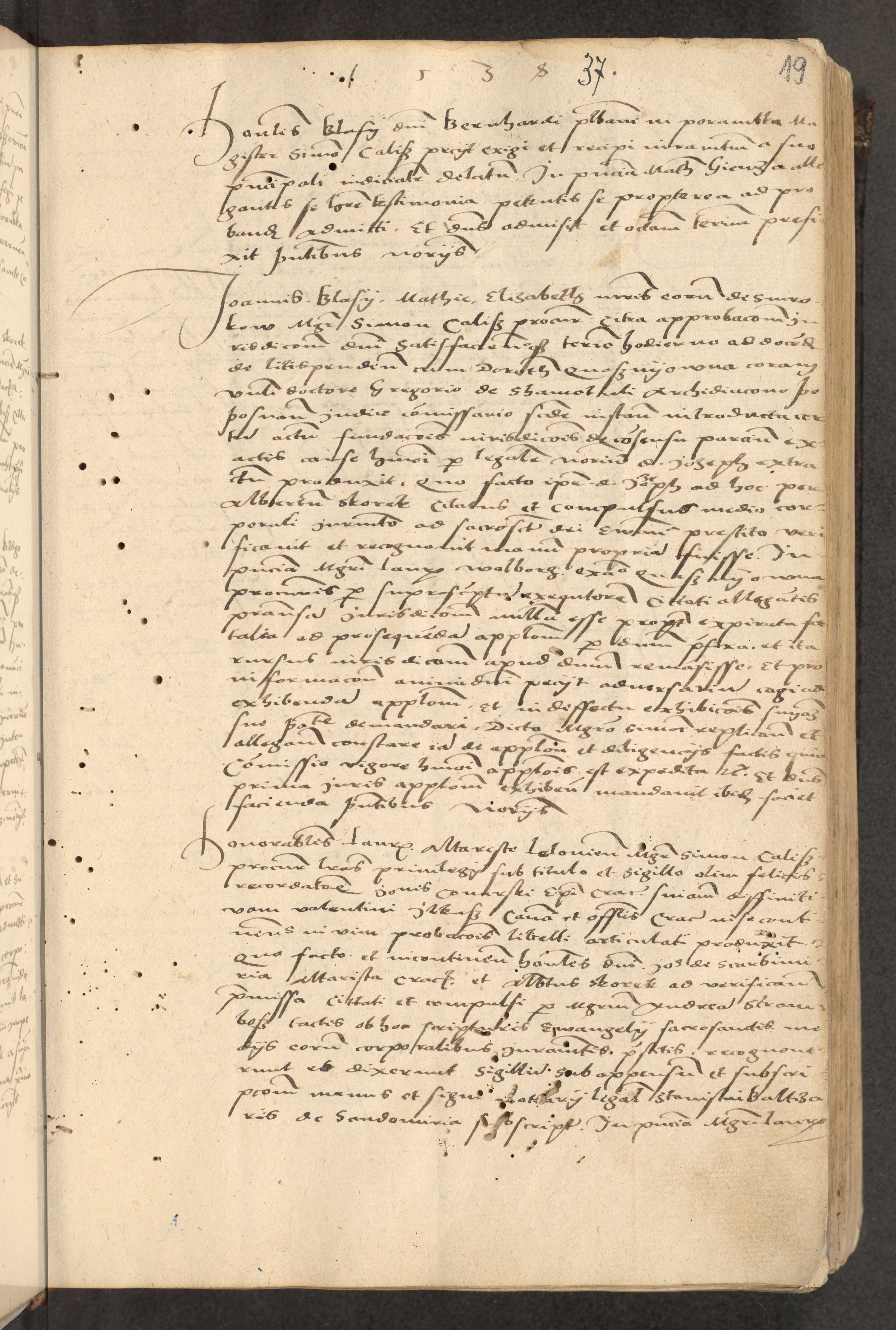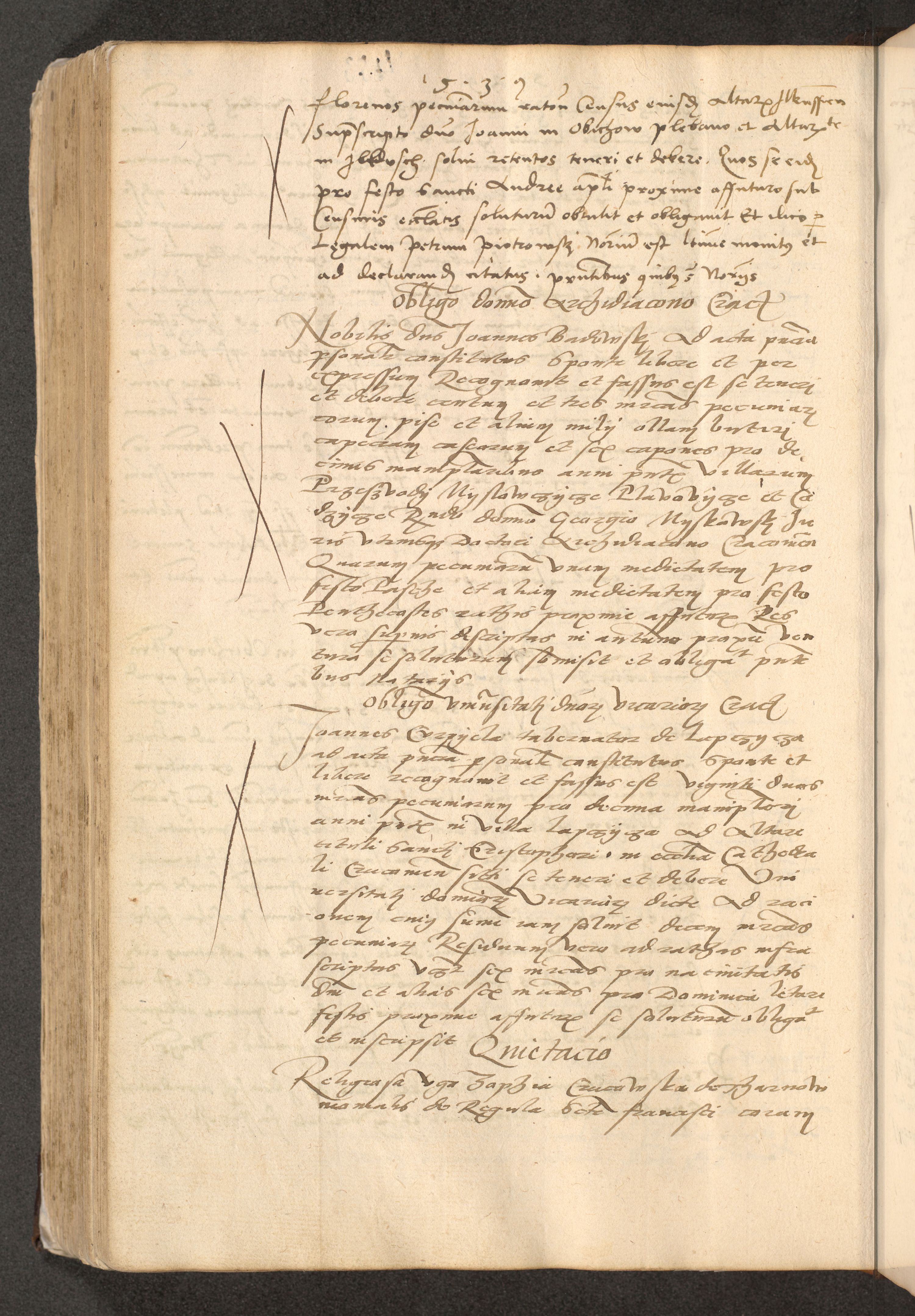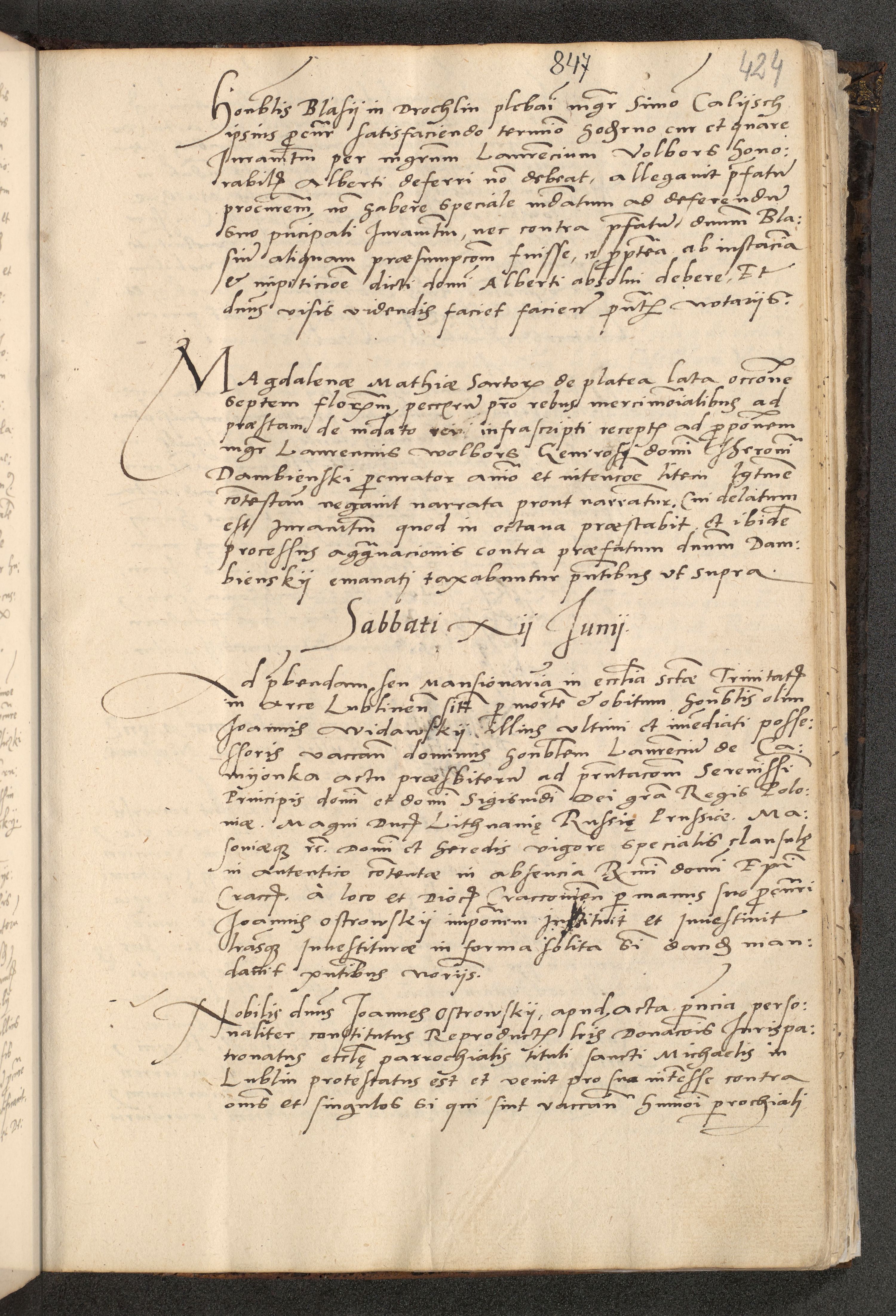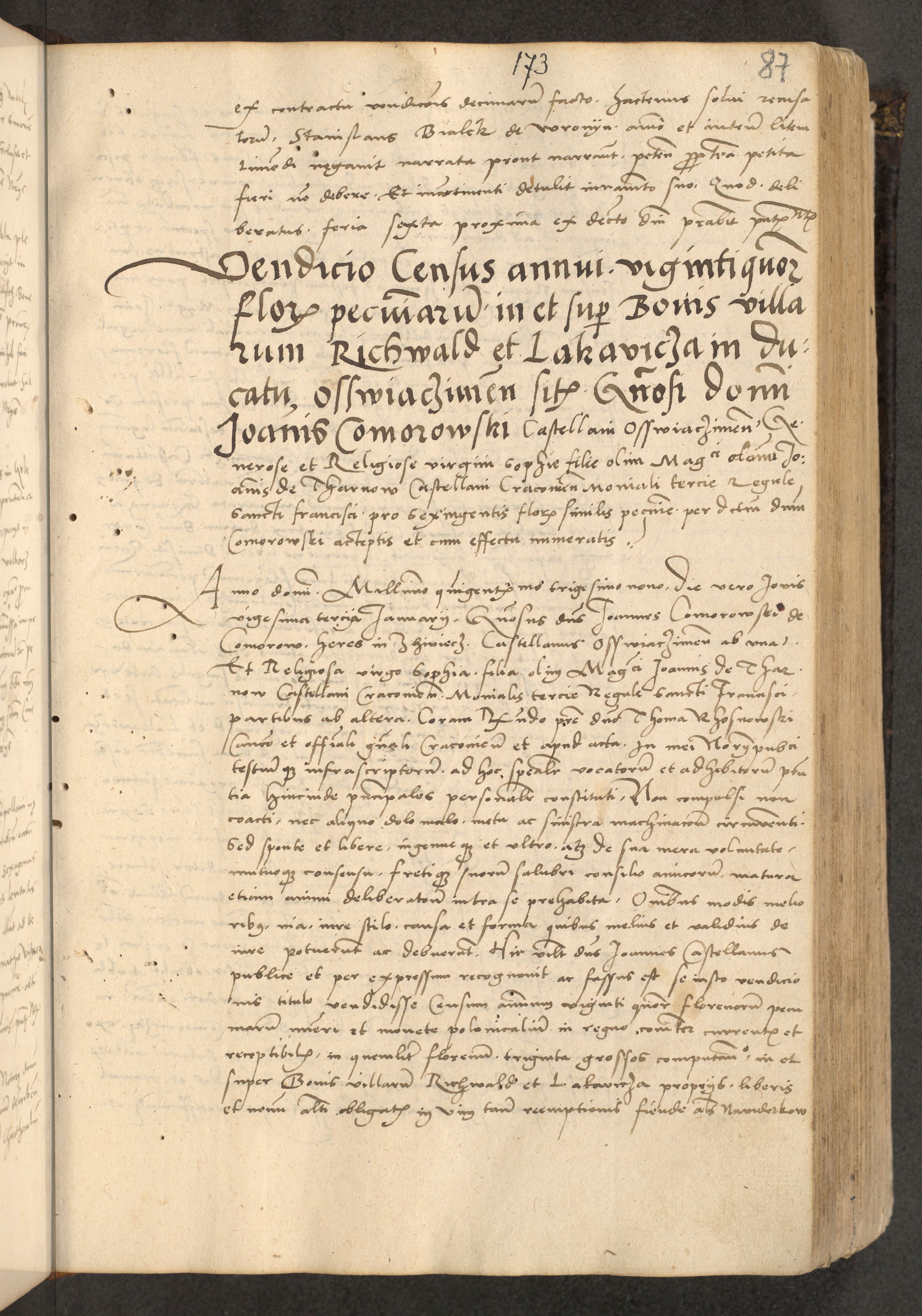 Acta actorum causarum, sentenciarum et obligationum coram reverendo patre domino Thoma Roznowski canonico et reverendissimi in Christo patris et domini domini Patri Dei gratia Cracoviensis. Sabbato, 26 Octobris in ecclesiam suam solenniter recepti officialis generalis Cracoviensis dinita administratura, qua fungebatur post mortem reverendissimi olim felicis recordationis domini Joannis Choiecki episcopi Cracoviensis et Regni Polonie cancelarii anno presenti currenti videlicet 1538, die 11 Marcii Piotrcovie in comiciis celebratis circiter 23 horam defuncti sepulto corpore nona eiusdemque obsequiis X respective Aprilis peractis electo sub indictione XI, pontificatu vero sanctissimi in Christo patris et domini nostri domini Pauli divina providencia pape tercii foeliciter moderni, anno quarto, incepta felicibus auspiciis continuantur ordine processu infrascripto