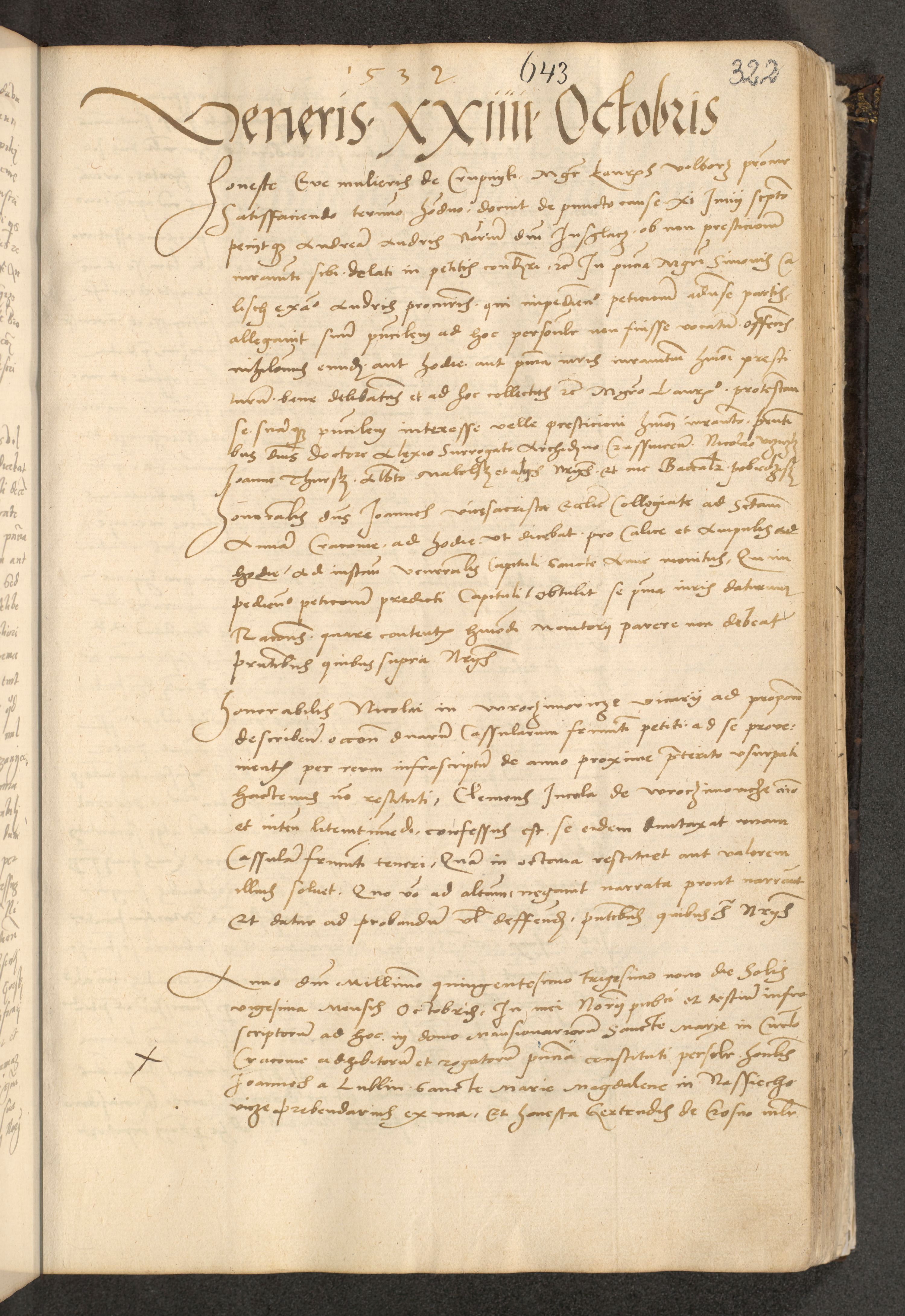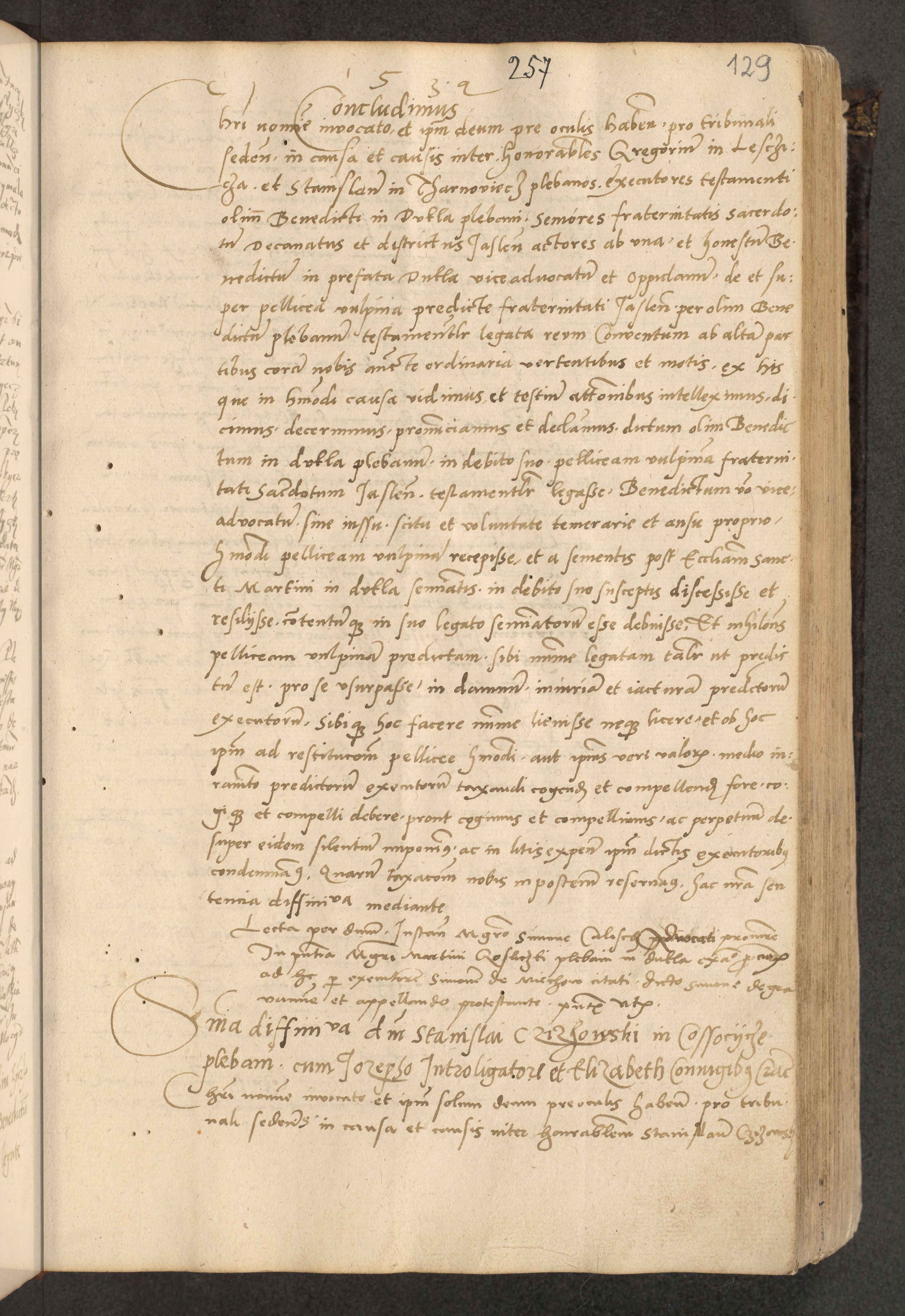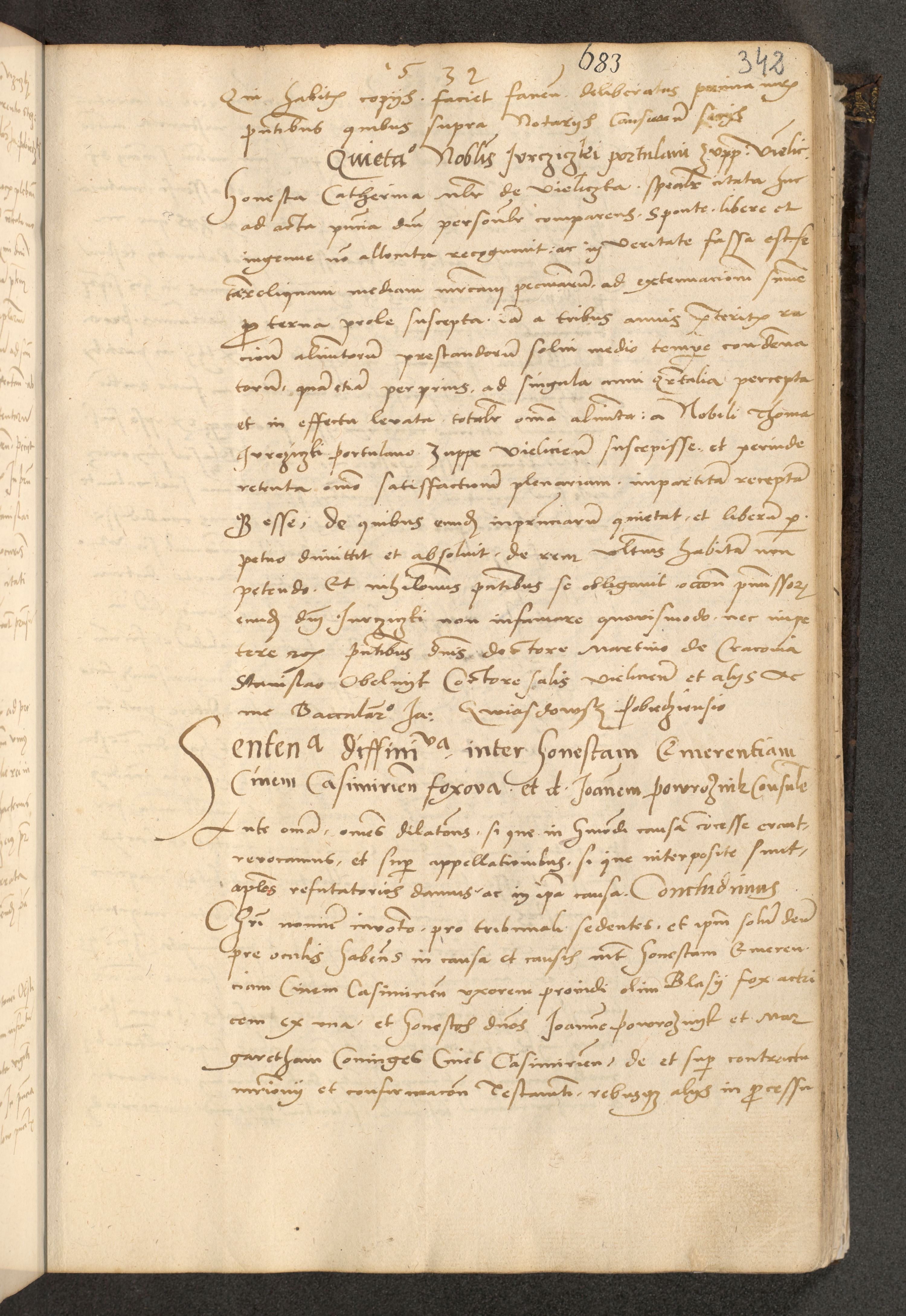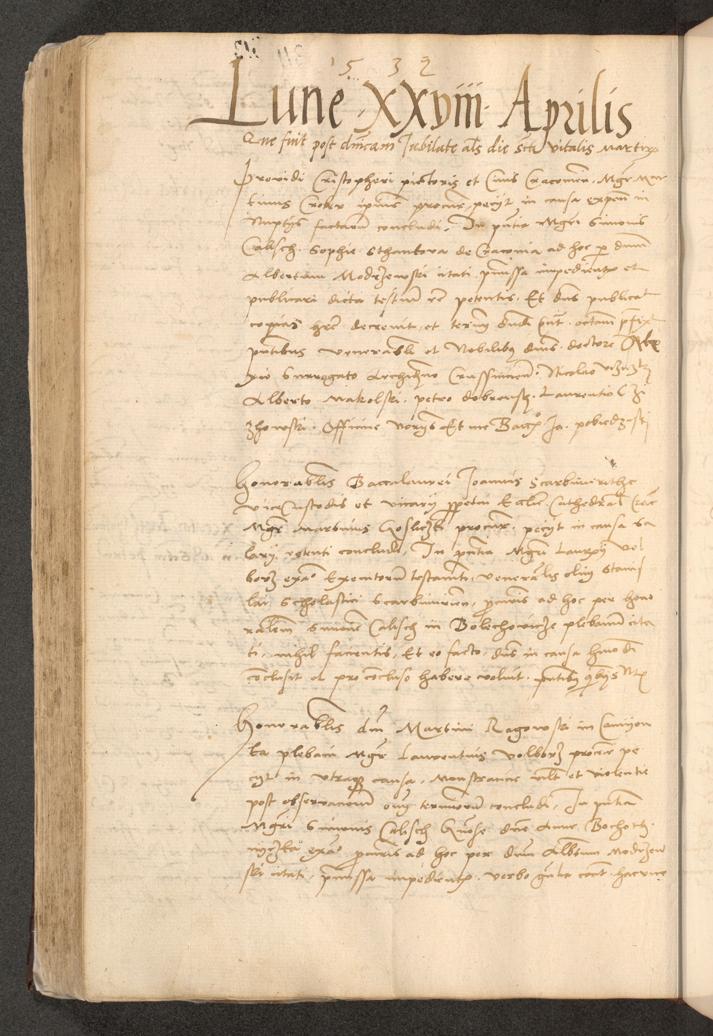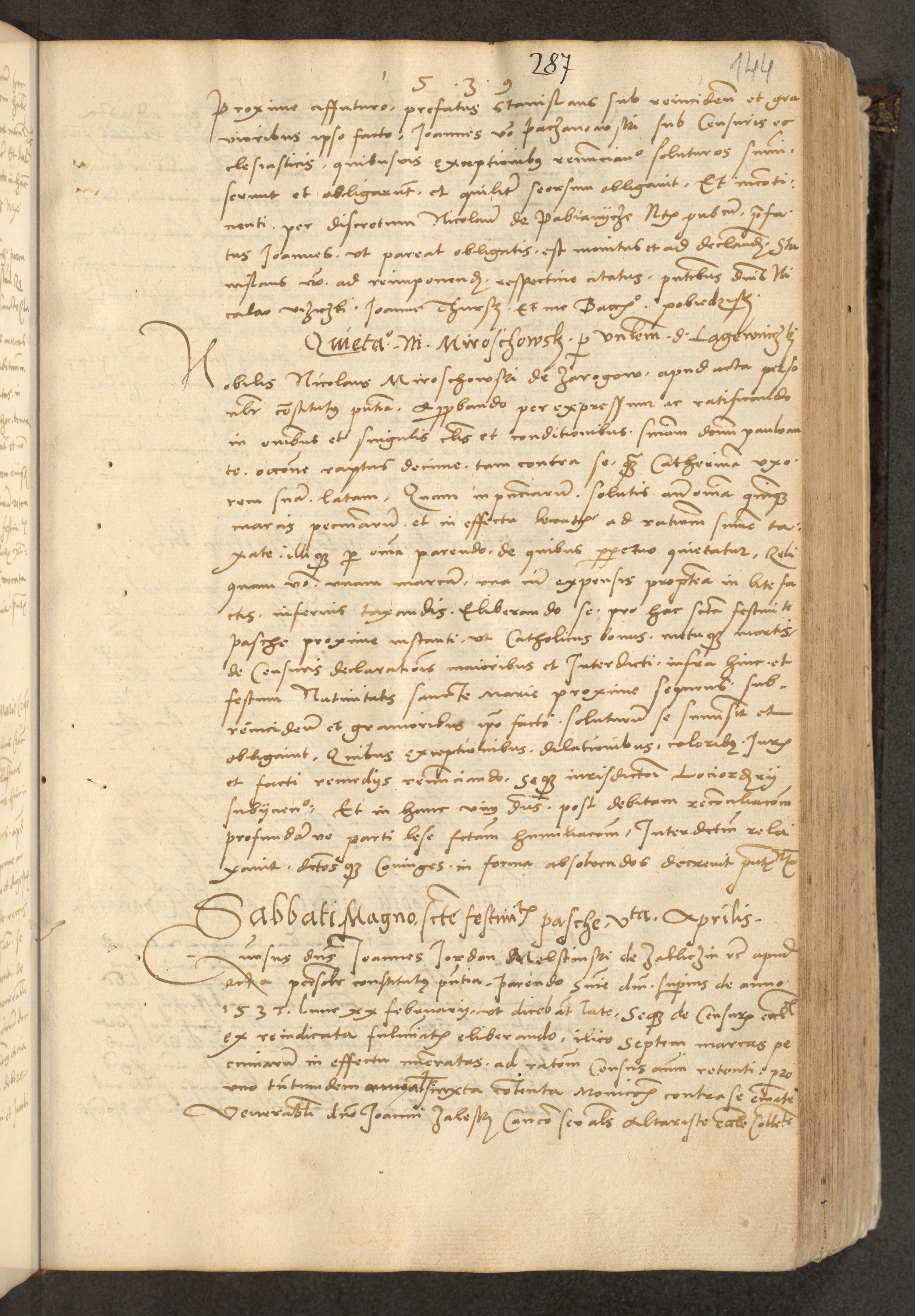 Acta actorum causarum, sentenciarum et obligationum coram reverendo patre domino Thoma Roznowski canonico et reverendissimi in Christo patris et domini domini Patri Dei gratia Cracoviensis. Sabbato, 26 Octobris in ecclesiam suam solenniter recepti officialis generalis Cracoviensis dinita administratura, qua fungebatur post mortem reverendissimi olim felicis recordationis domini Joannis Choiecki episcopi Cracoviensis et Regni Polonie cancelarii anno presenti currenti videlicet 1538, die 11 Marcii Piotrcovie in comiciis celebratis circiter 23 horam defuncti sepulto corpore nona eiusdemque obsequiis X respective Aprilis peractis electo sub indictione XI, pontificatu vero sanctissimi in Christo patris et domini nostri domini Pauli divina providencia pape tercii foeliciter moderni, anno quarto, incepta felicibus auspiciis continuantur ordine processu infrascripto