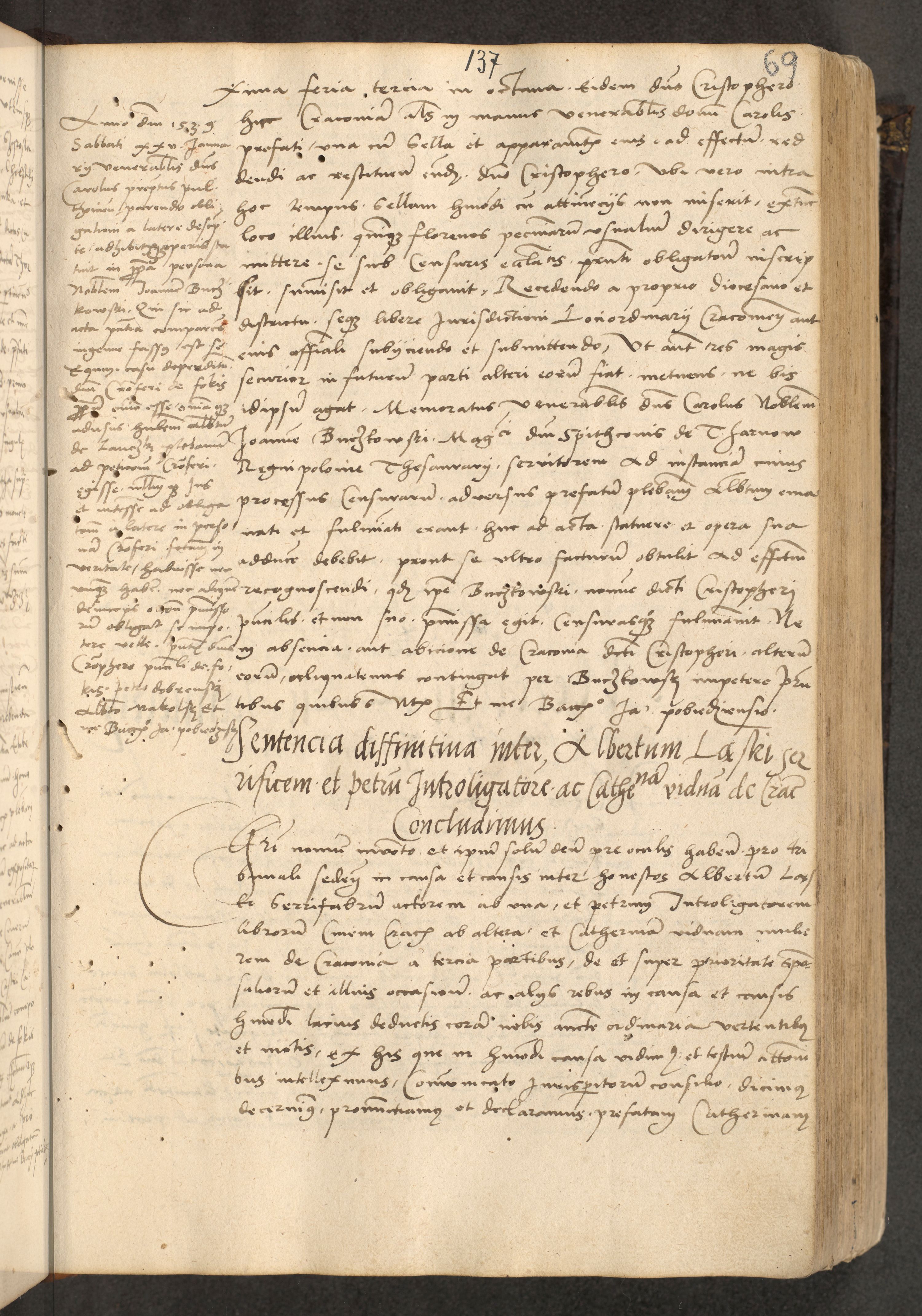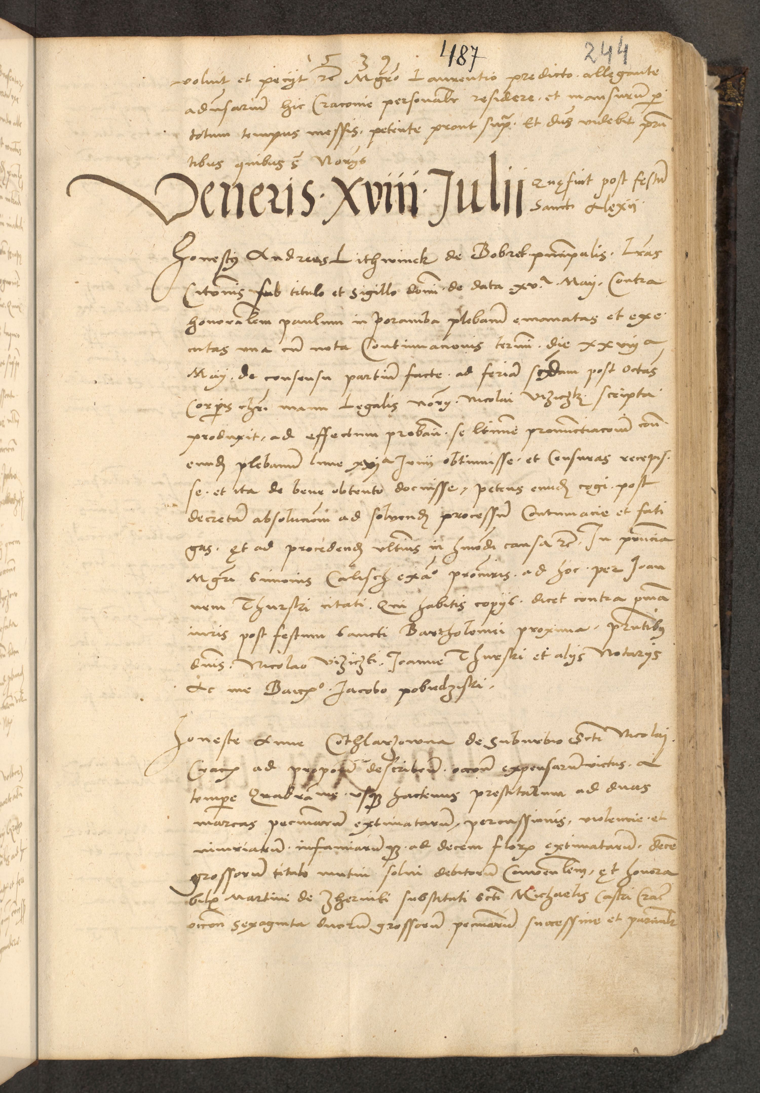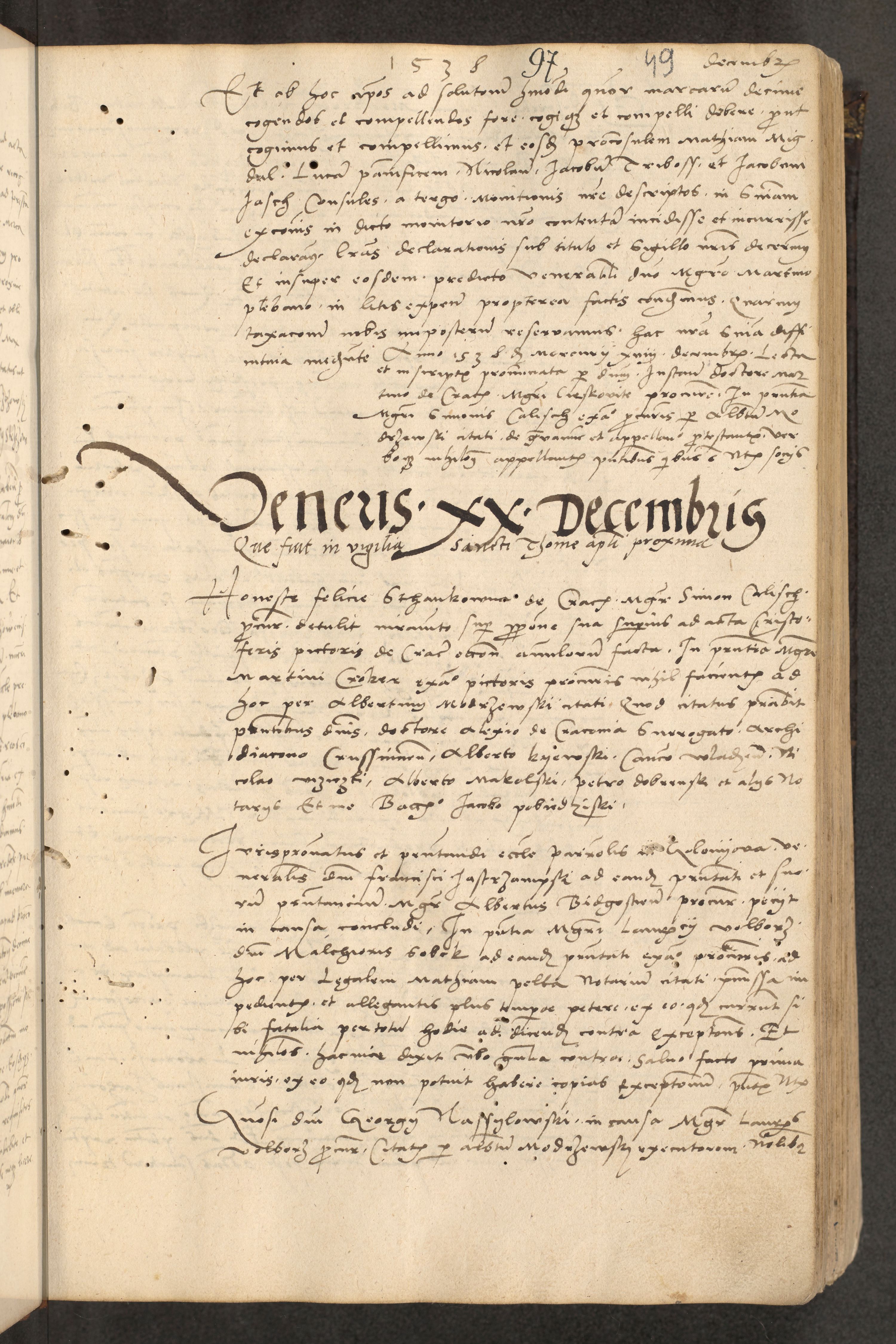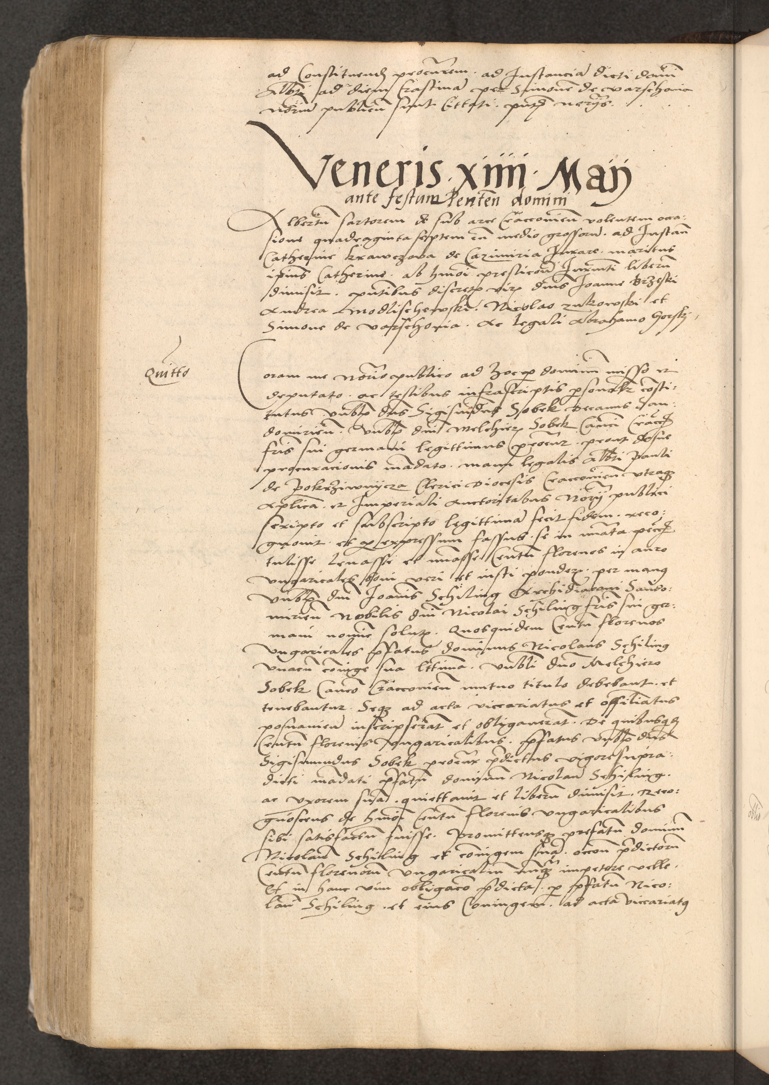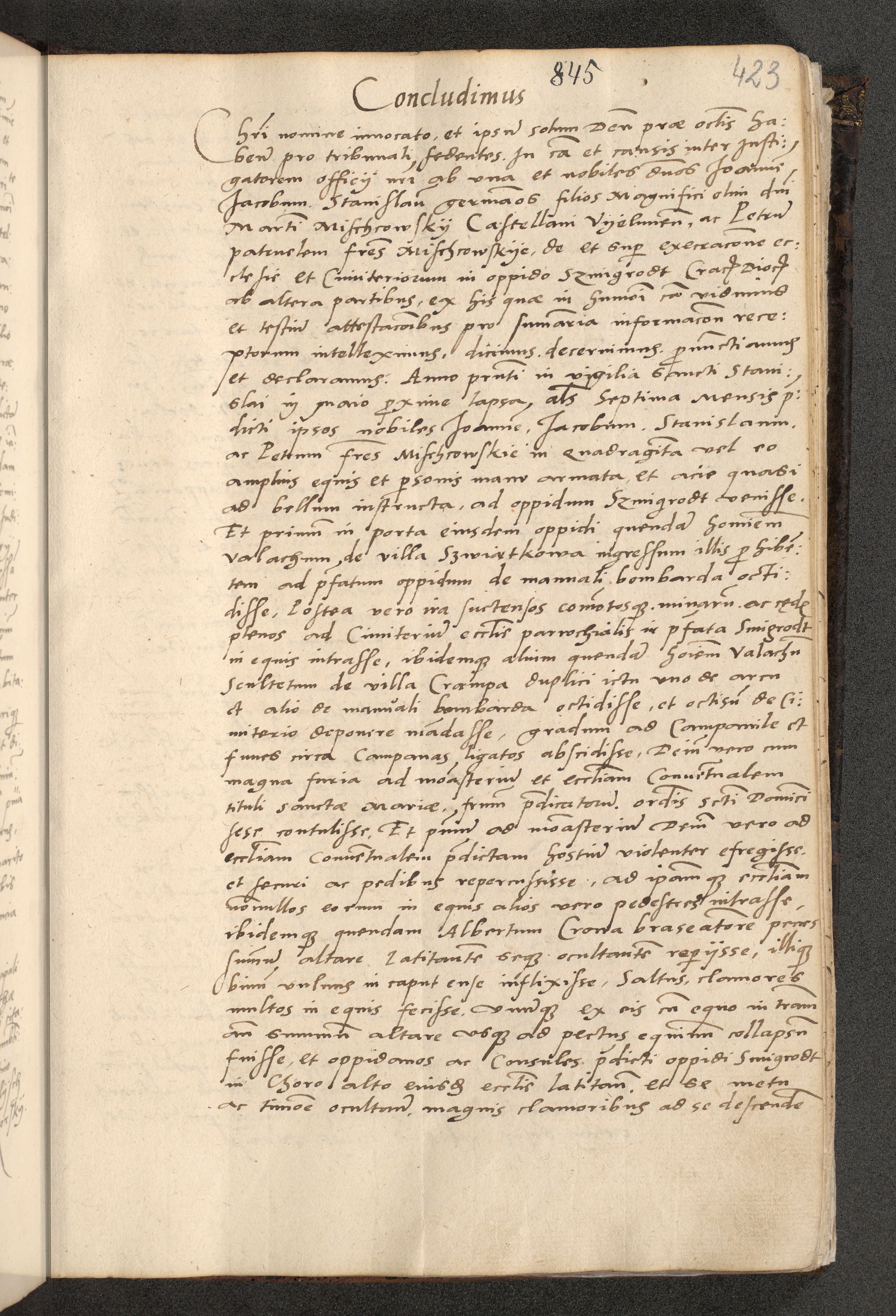 Acta actorum causarum, sentenciarum et obligationum coram reverendo patre domino Thoma Roznowski canonico et reverendissimi in Christo patris et domini domini Patri Dei gratia Cracoviensis. Sabbato, 26 Octobris in ecclesiam suam solenniter recepti officialis generalis Cracoviensis dinita administratura, qua fungebatur post mortem reverendissimi olim felicis recordationis domini Joannis Choiecki episcopi Cracoviensis et Regni Polonie cancelarii anno presenti currenti videlicet 1538, die 11 Marcii Piotrcovie in comiciis celebratis circiter 23 horam defuncti sepulto corpore nona eiusdemque obsequiis X respective Aprilis peractis electo sub indictione XI, pontificatu vero sanctissimi in Christo patris et domini nostri domini Pauli divina providencia pape tercii foeliciter moderni, anno quarto, incepta felicibus auspiciis continuantur ordine processu infrascripto