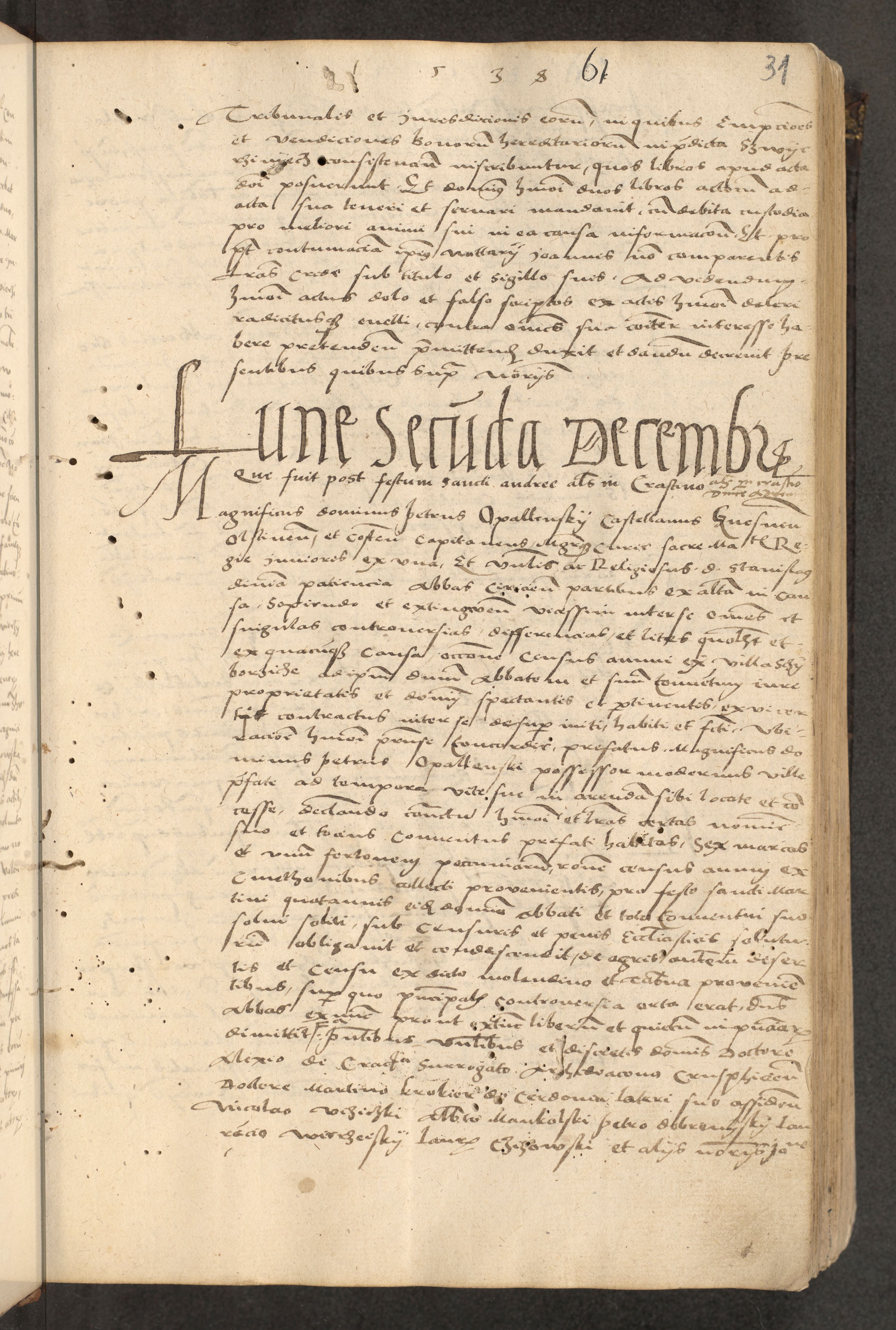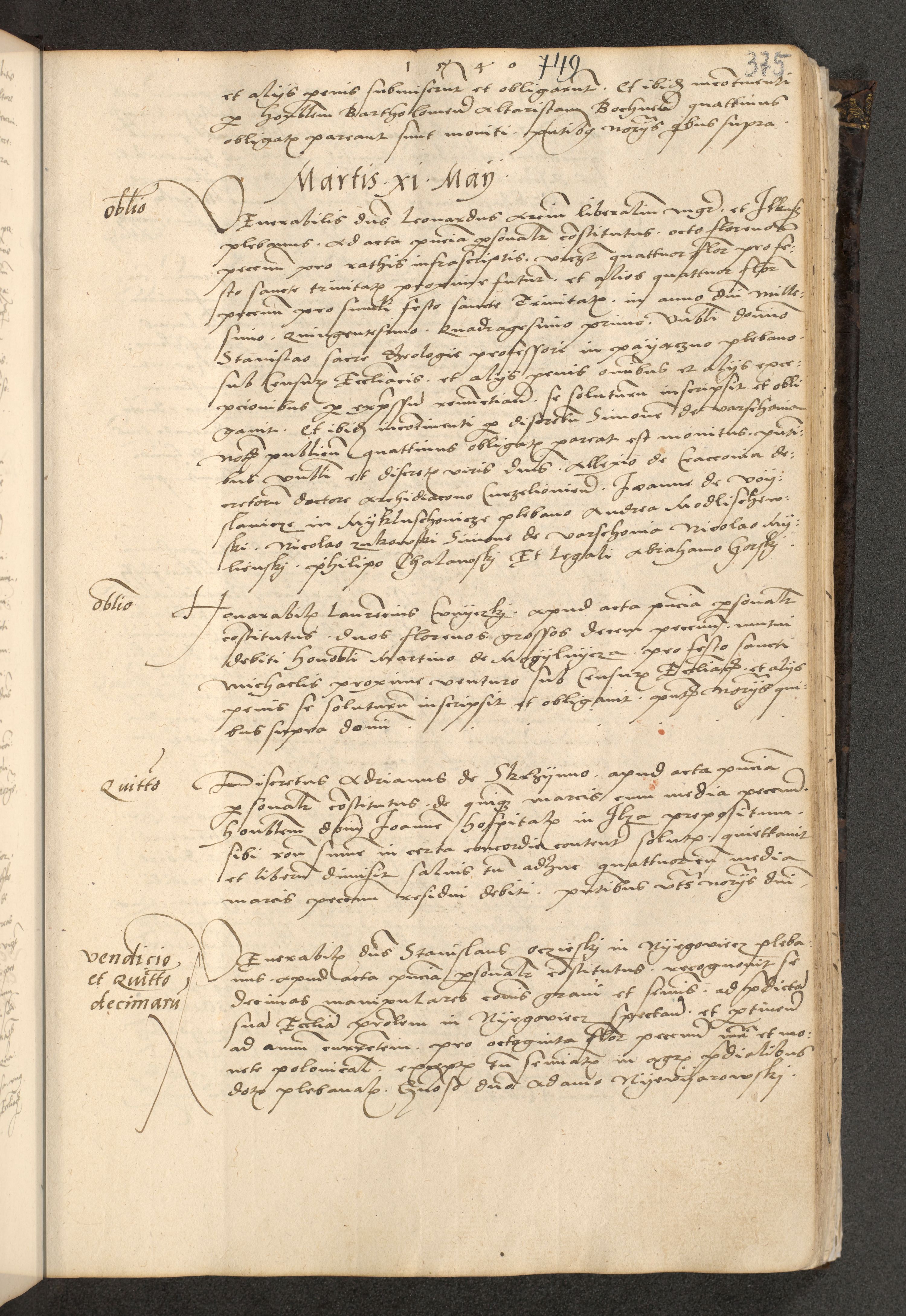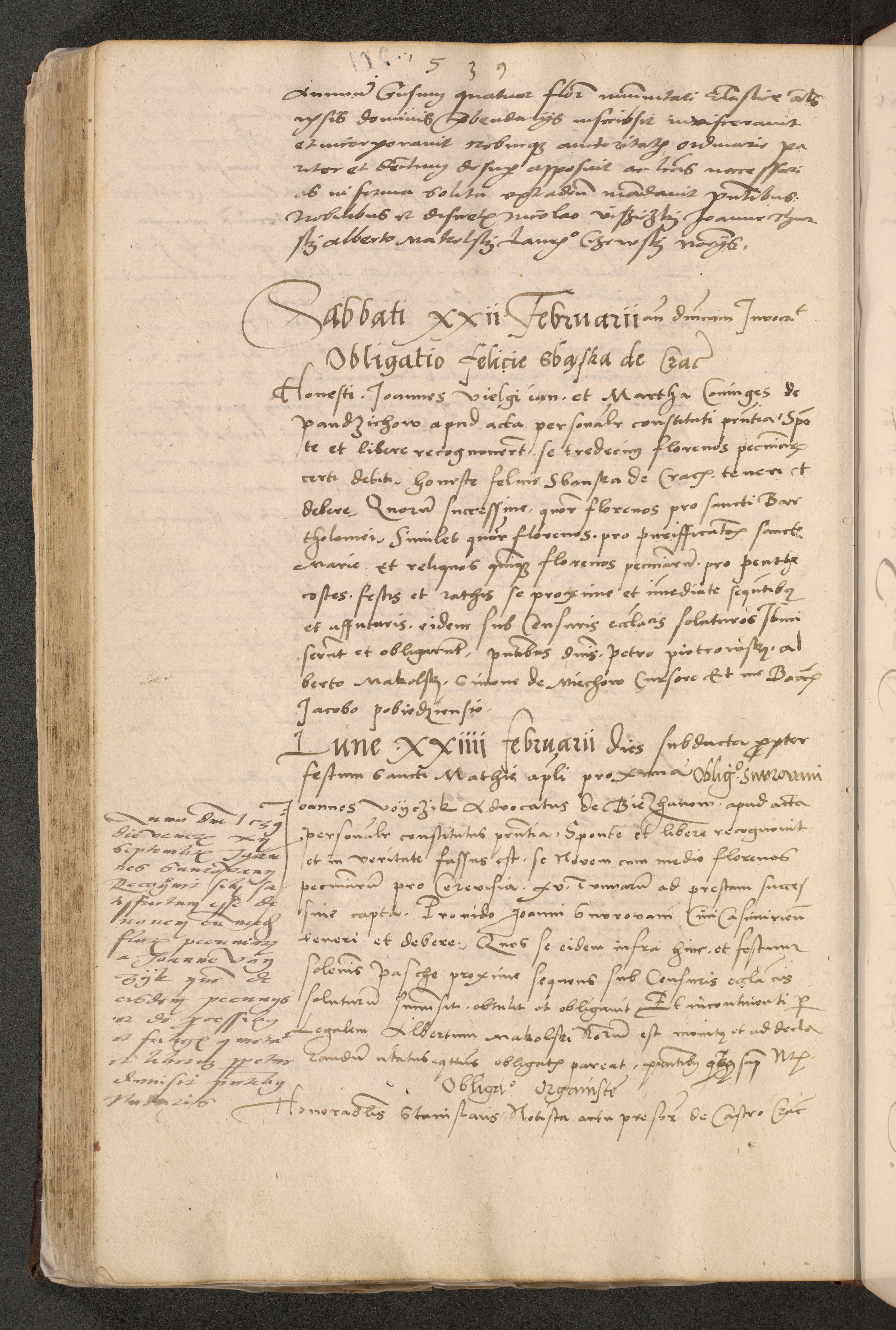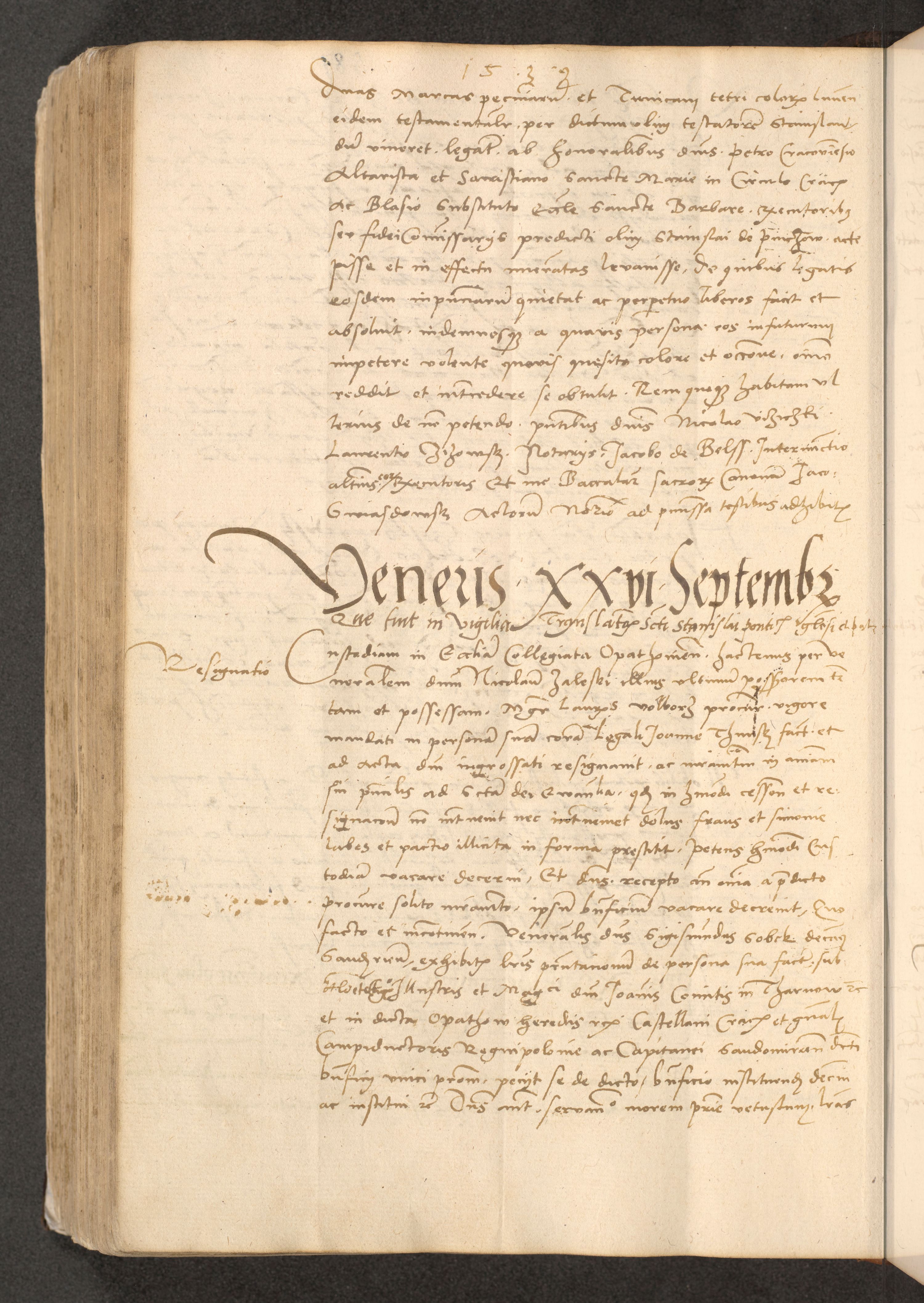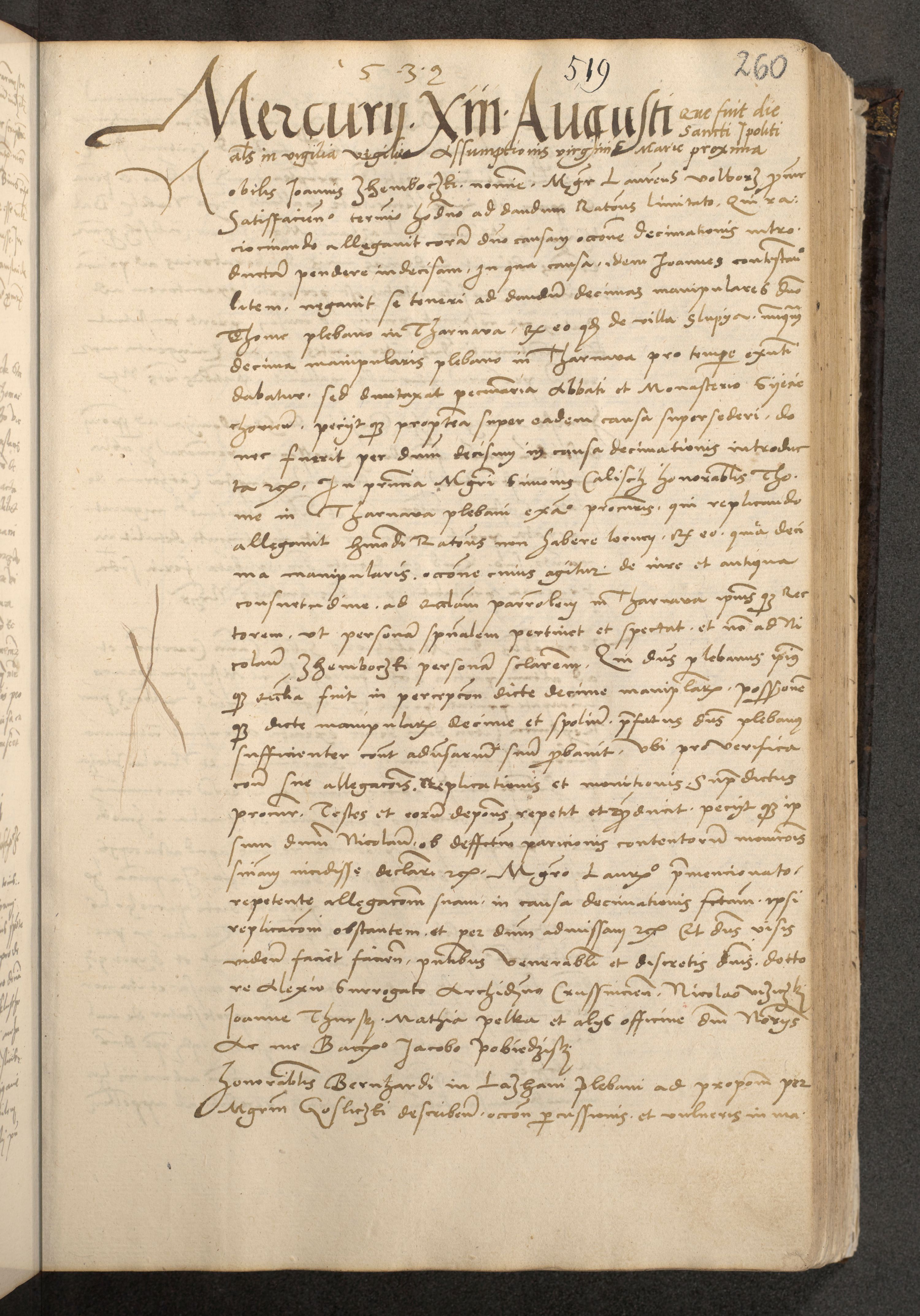 Acta actorum causarum, sentenciarum et obligationum coram reverendo patre domino Thoma Roznowski canonico et reverendissimi in Christo patris et domini domini Patri Dei gratia Cracoviensis. Sabbato, 26 Octobris in ecclesiam suam solenniter recepti officialis generalis Cracoviensis dinita administratura, qua fungebatur post mortem reverendissimi olim felicis recordationis domini Joannis Choiecki episcopi Cracoviensis et Regni Polonie cancelarii anno presenti currenti videlicet 1538, die 11 Marcii Piotrcovie in comiciis celebratis circiter 23 horam defuncti sepulto corpore nona eiusdemque obsequiis X respective Aprilis peractis electo sub indictione XI, pontificatu vero sanctissimi in Christo patris et domini nostri domini Pauli divina providencia pape tercii foeliciter moderni, anno quarto, incepta felicibus auspiciis continuantur ordine processu infrascripto