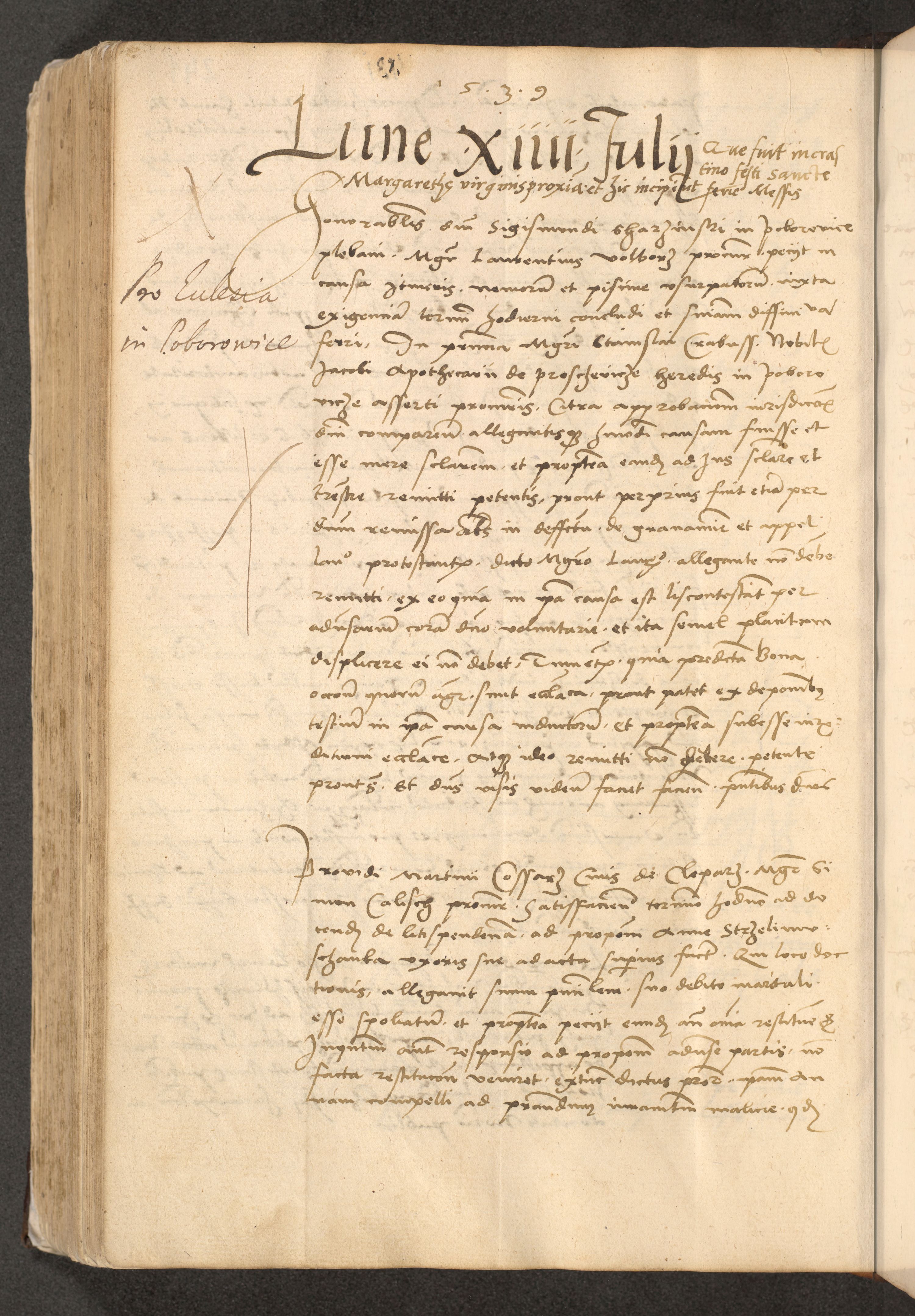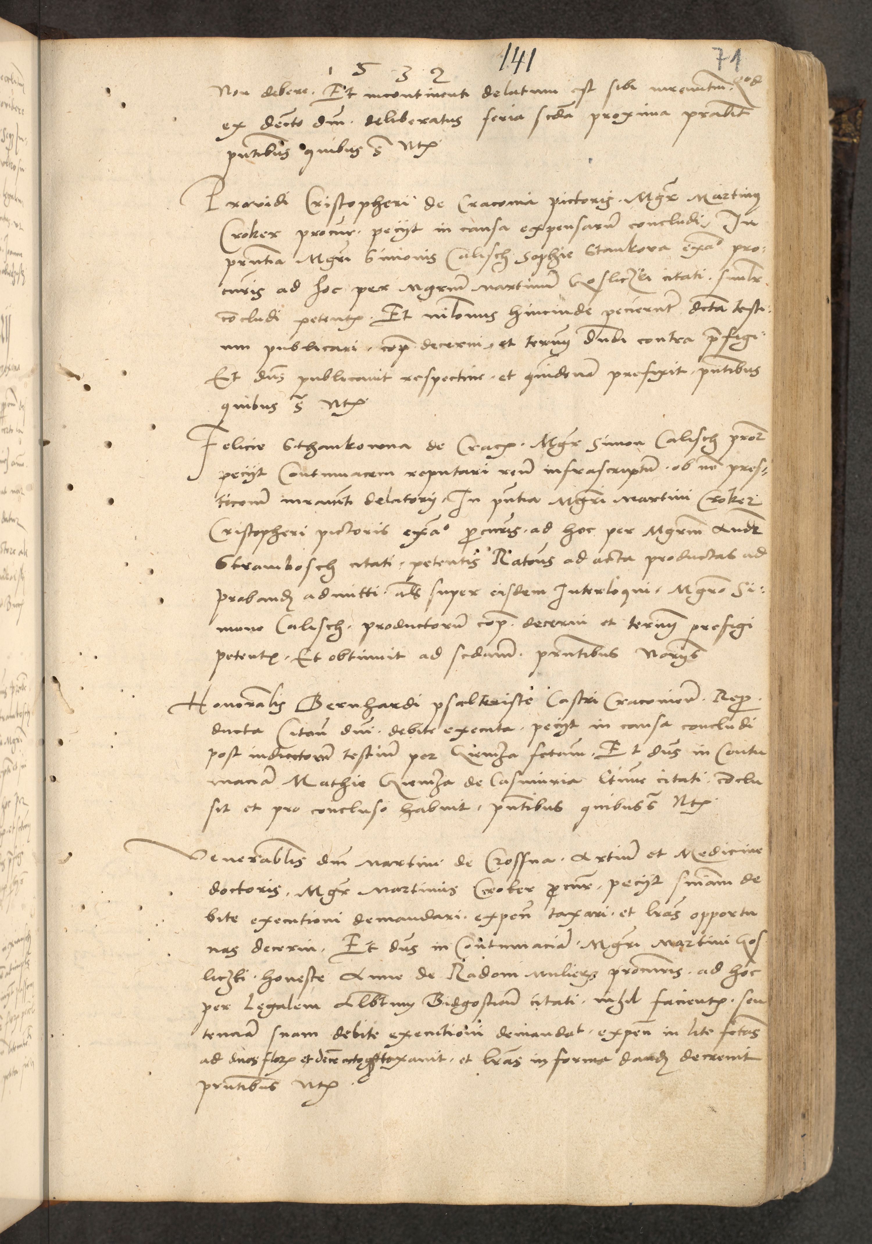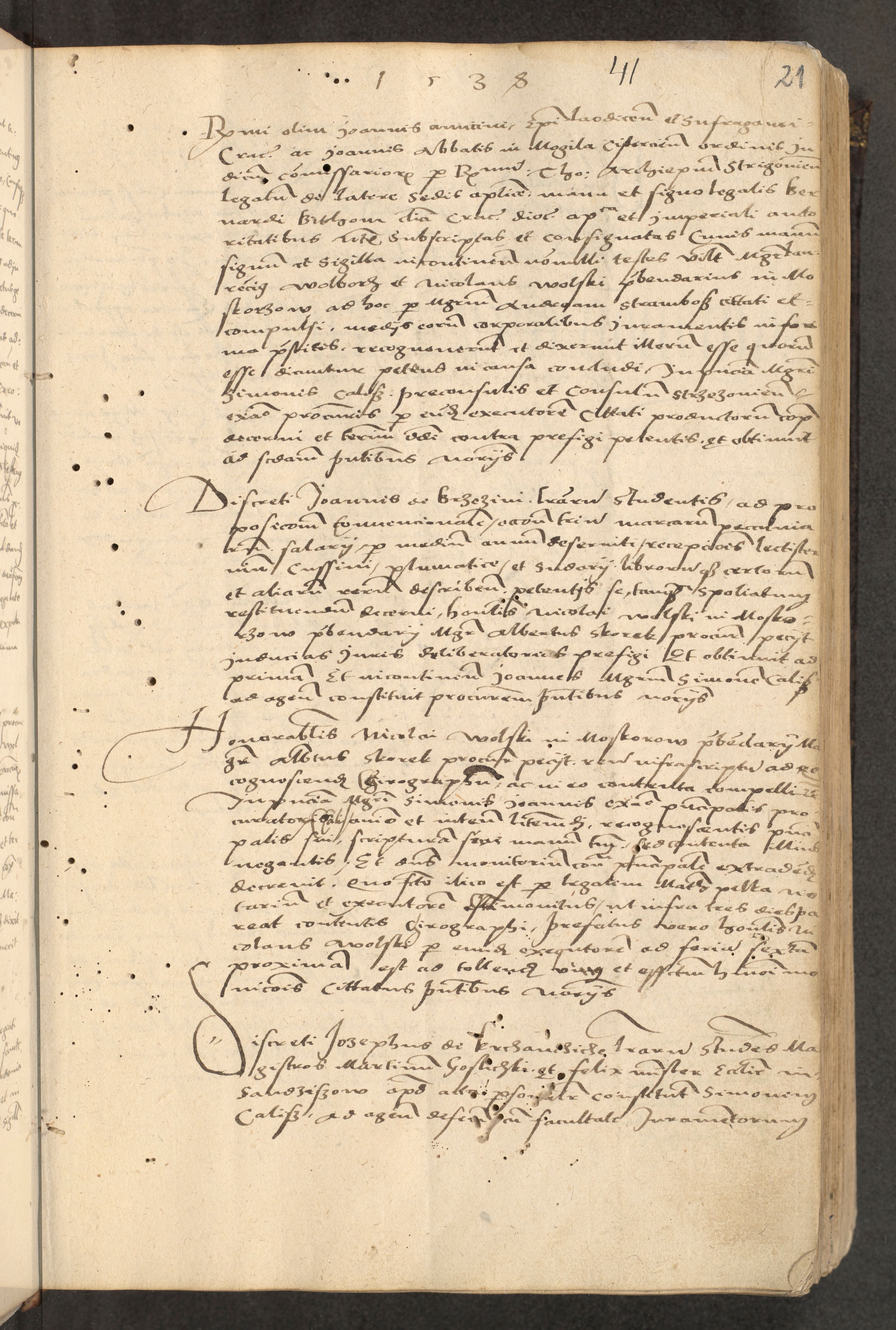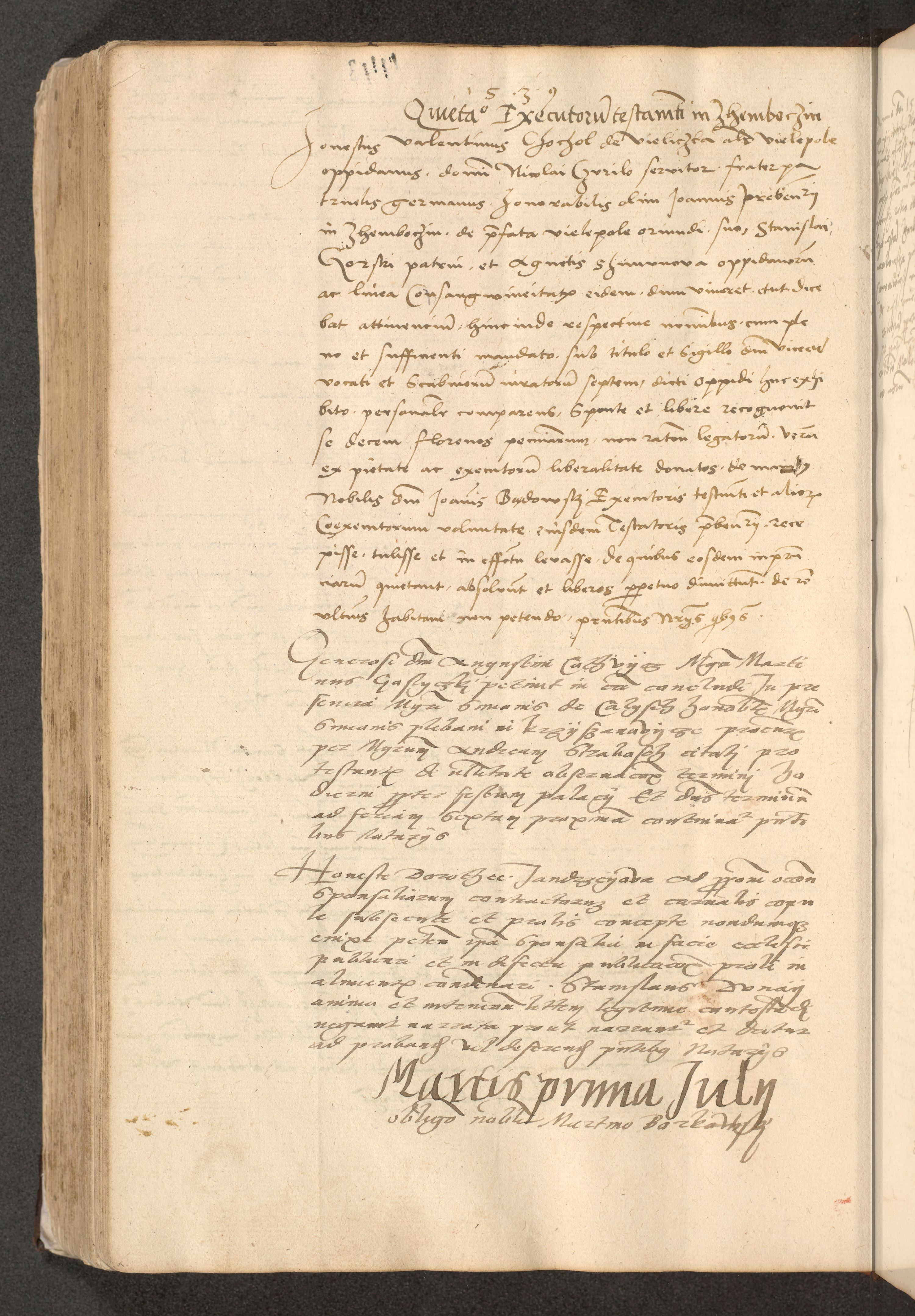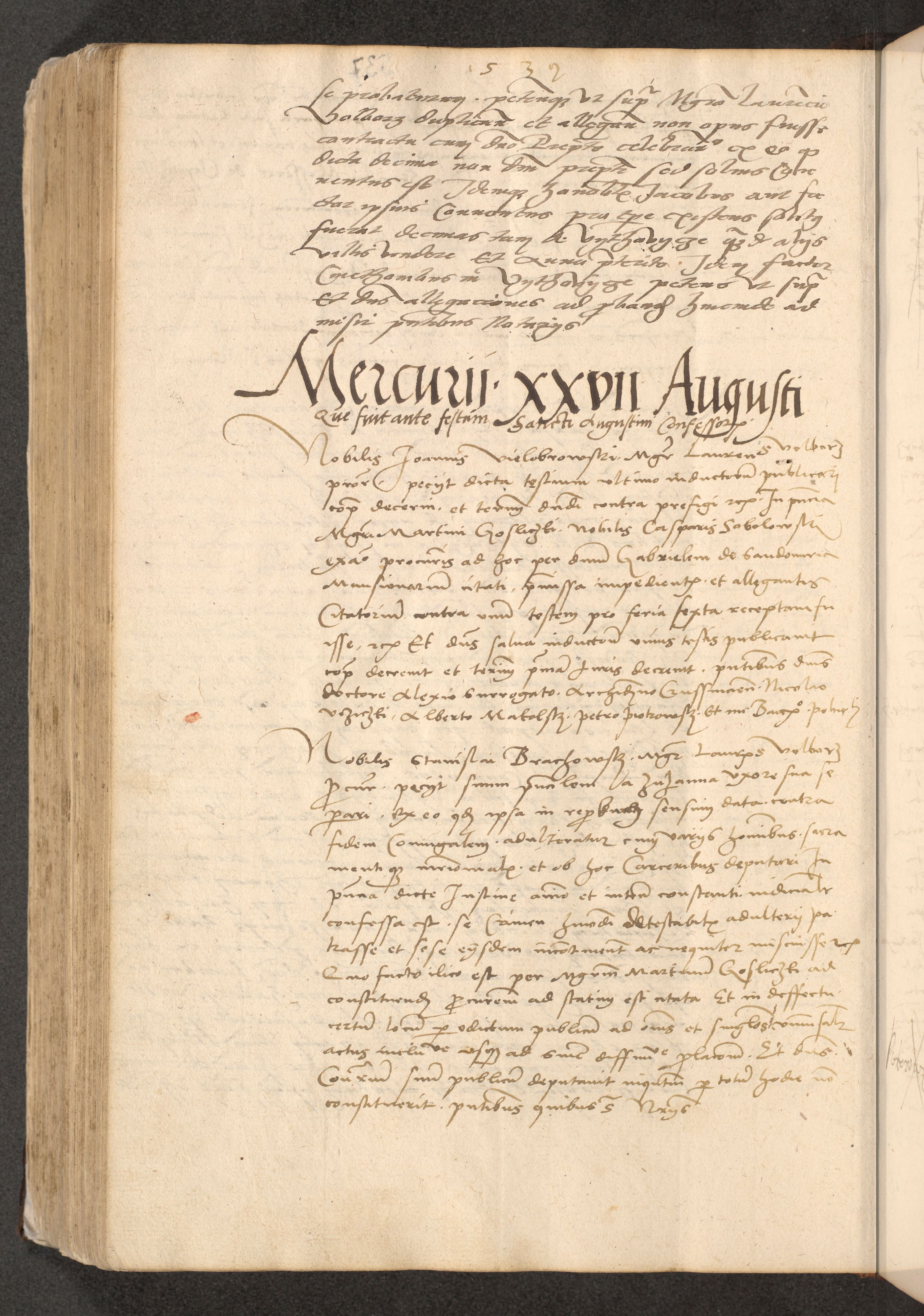 Acta actorum causarum, sentenciarum et obligationum coram reverendo patre domino Thoma Roznowski canonico et reverendissimi in Christo patris et domini domini Patri Dei gratia Cracoviensis. Sabbato, 26 Octobris in ecclesiam suam solenniter recepti officialis generalis Cracoviensis dinita administratura, qua fungebatur post mortem reverendissimi olim felicis recordationis domini Joannis Choiecki episcopi Cracoviensis et Regni Polonie cancelarii anno presenti currenti videlicet 1538, die 11 Marcii Piotrcovie in comiciis celebratis circiter 23 horam defuncti sepulto corpore nona eiusdemque obsequiis X respective Aprilis peractis electo sub indictione XI, pontificatu vero sanctissimi in Christo patris et domini nostri domini Pauli divina providencia pape tercii foeliciter moderni, anno quarto, incepta felicibus auspiciis continuantur ordine processu infrascripto