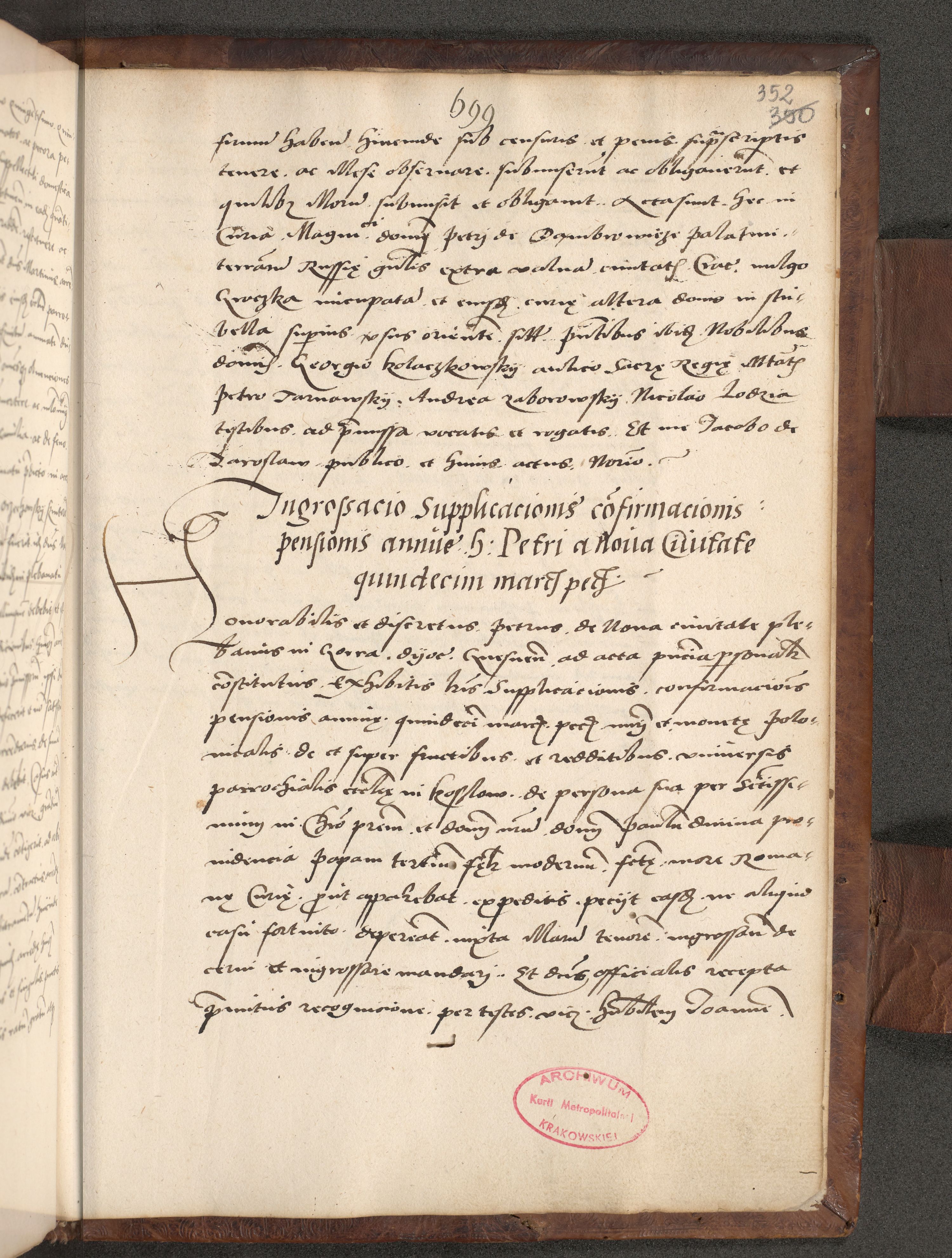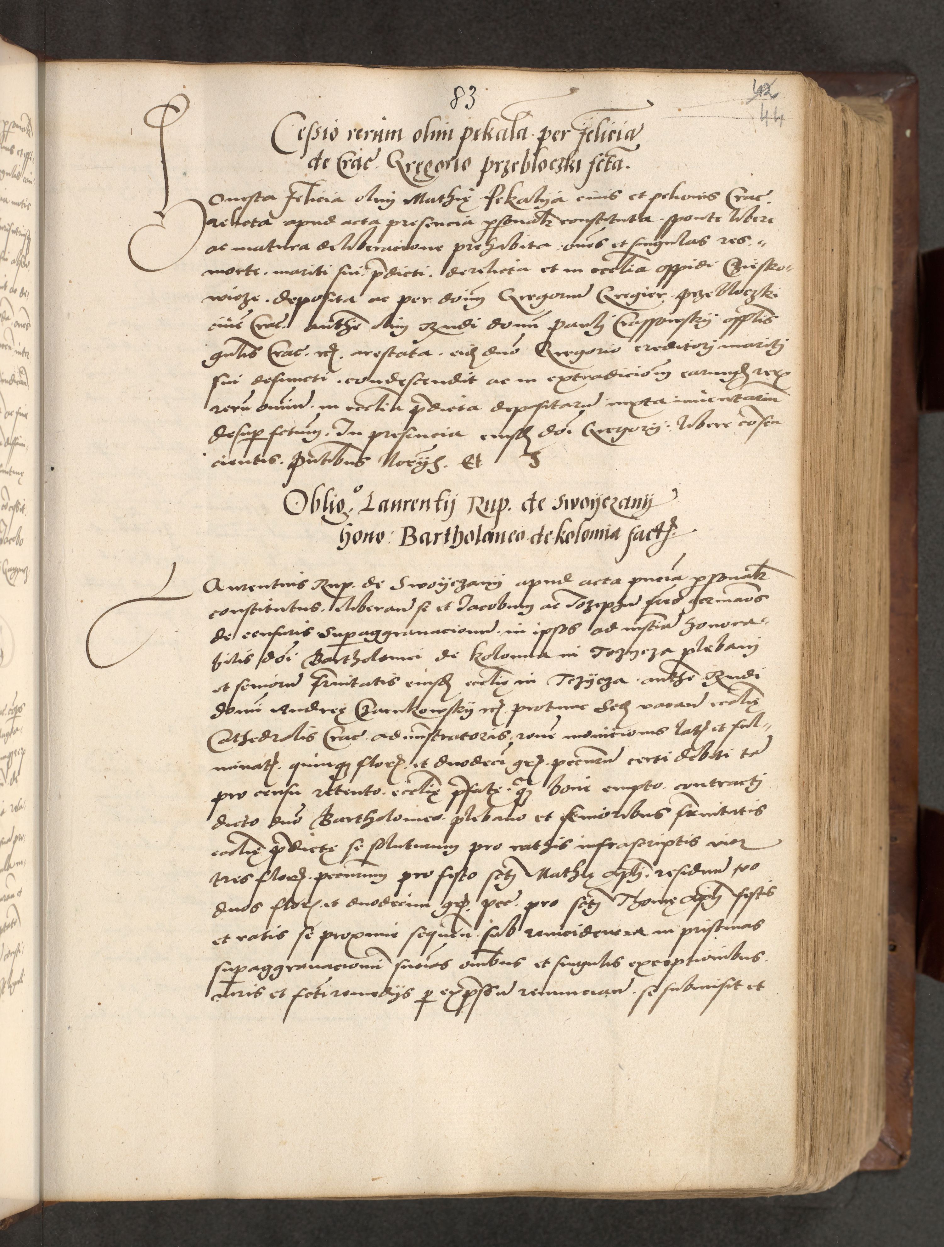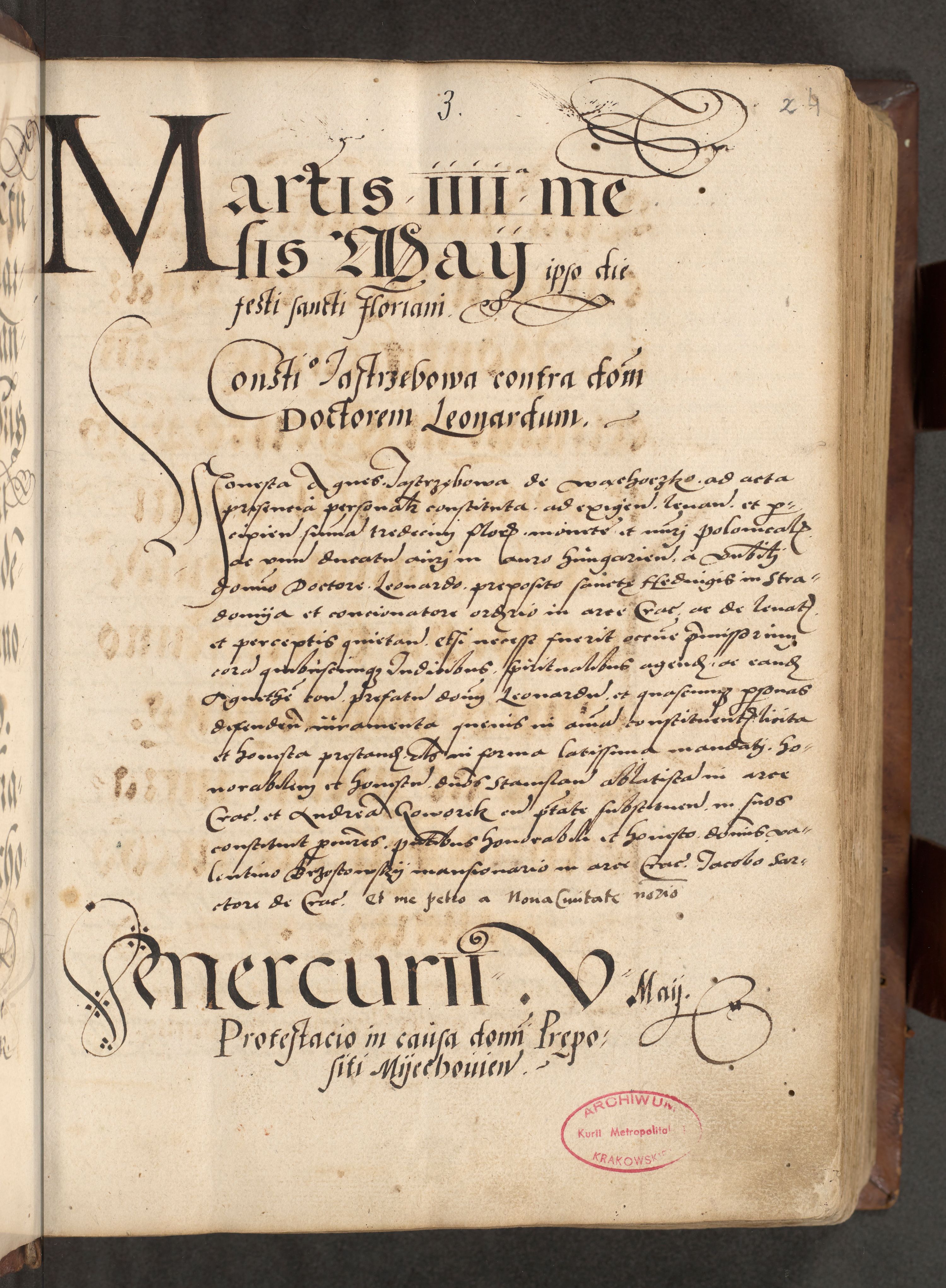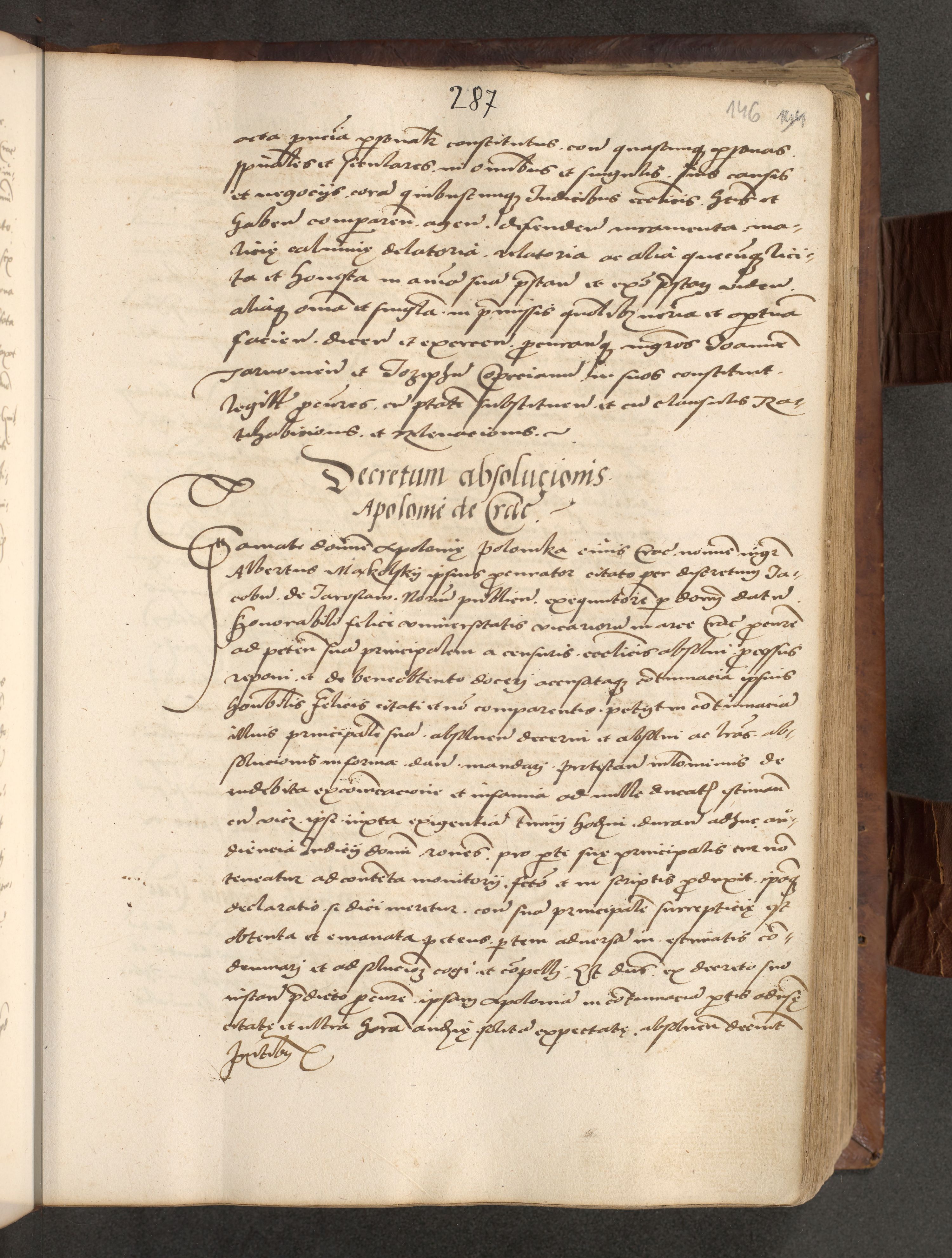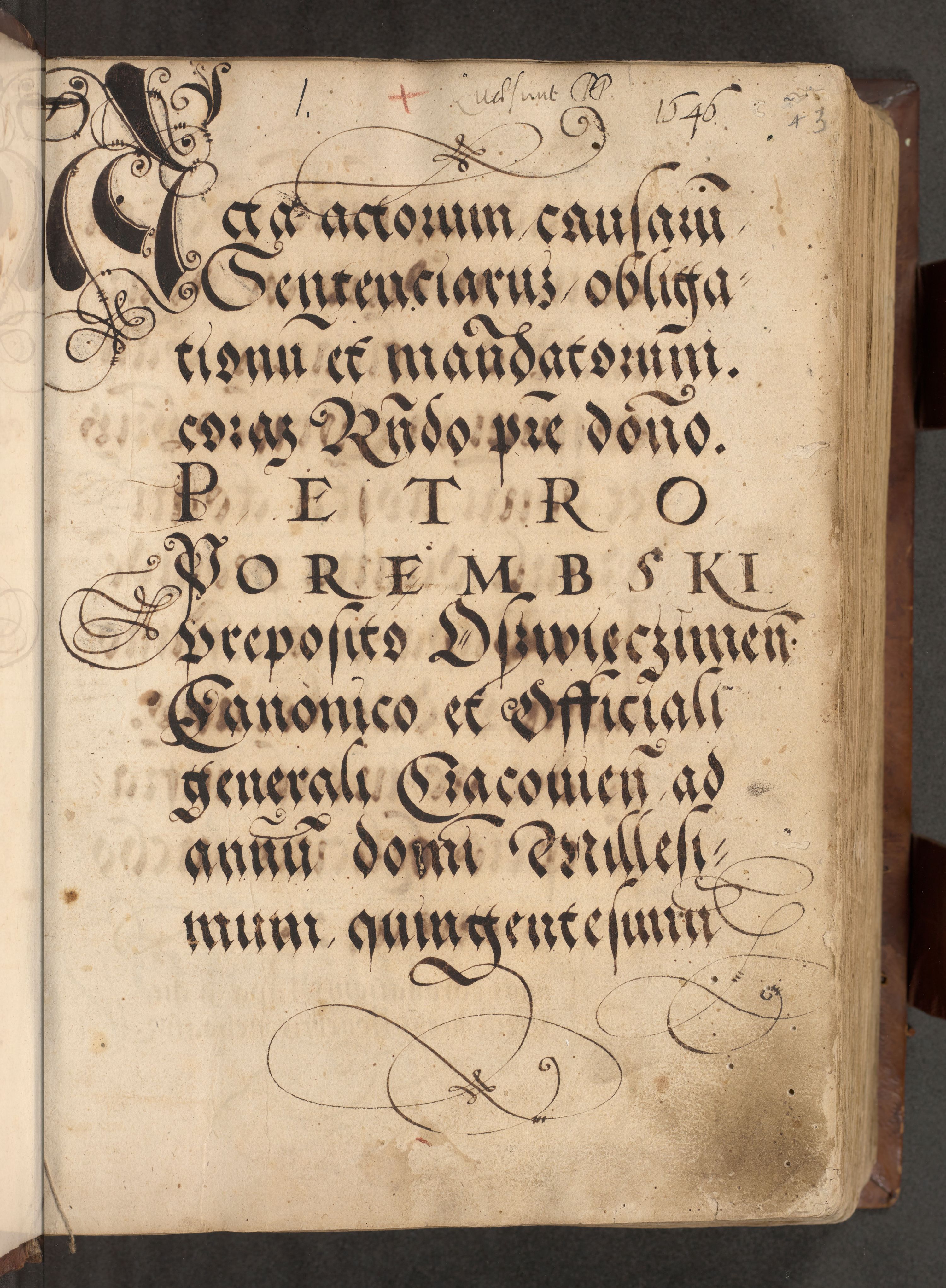 Acta actorum causarum, sentenciarum, obligationum et mandatorum coram reverendo patre domino Petro Porembski preposito Osswieczimensi, canonico et officiali generali Cracoviensi ad annum Domini millesimum quingentesimum quadrogesimum sextum, cuius inditio est quarta, pontificatus sanctissimi in Christo patris et domini nostri domini Pauli divina providencia papae tercii, anno ipsius duodecimo, a die ac mense infrascriptis feliciter inchoantur
