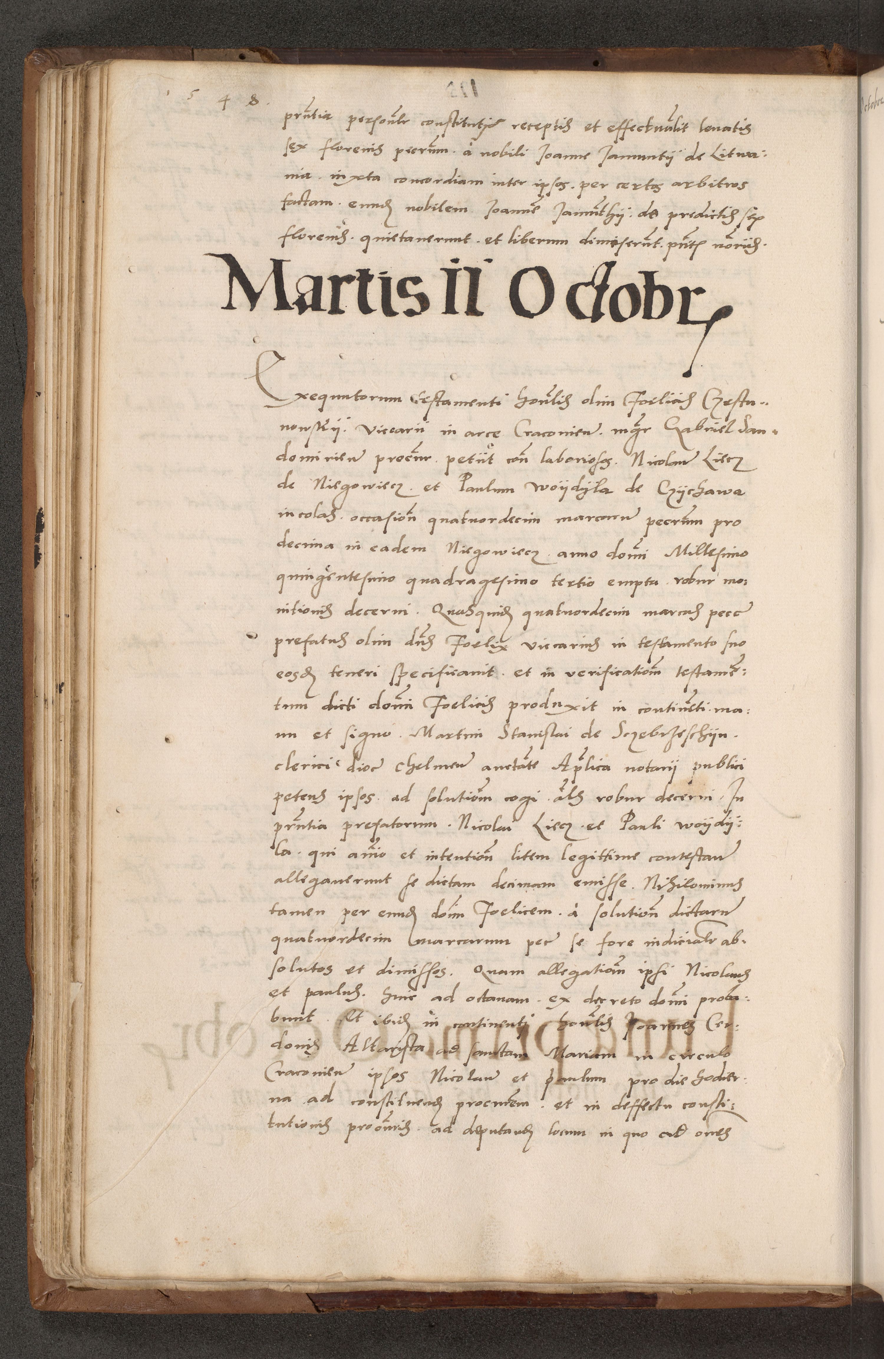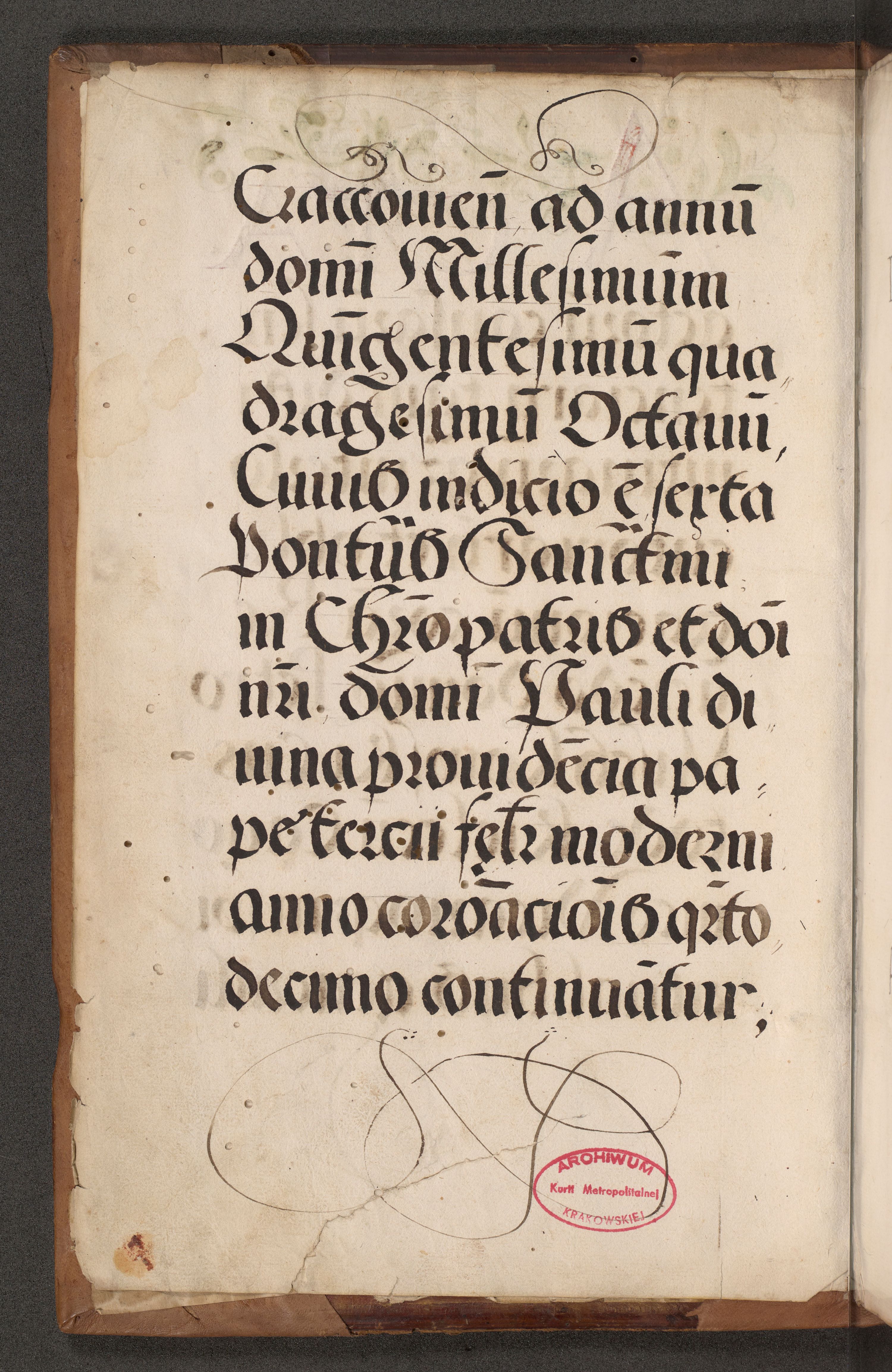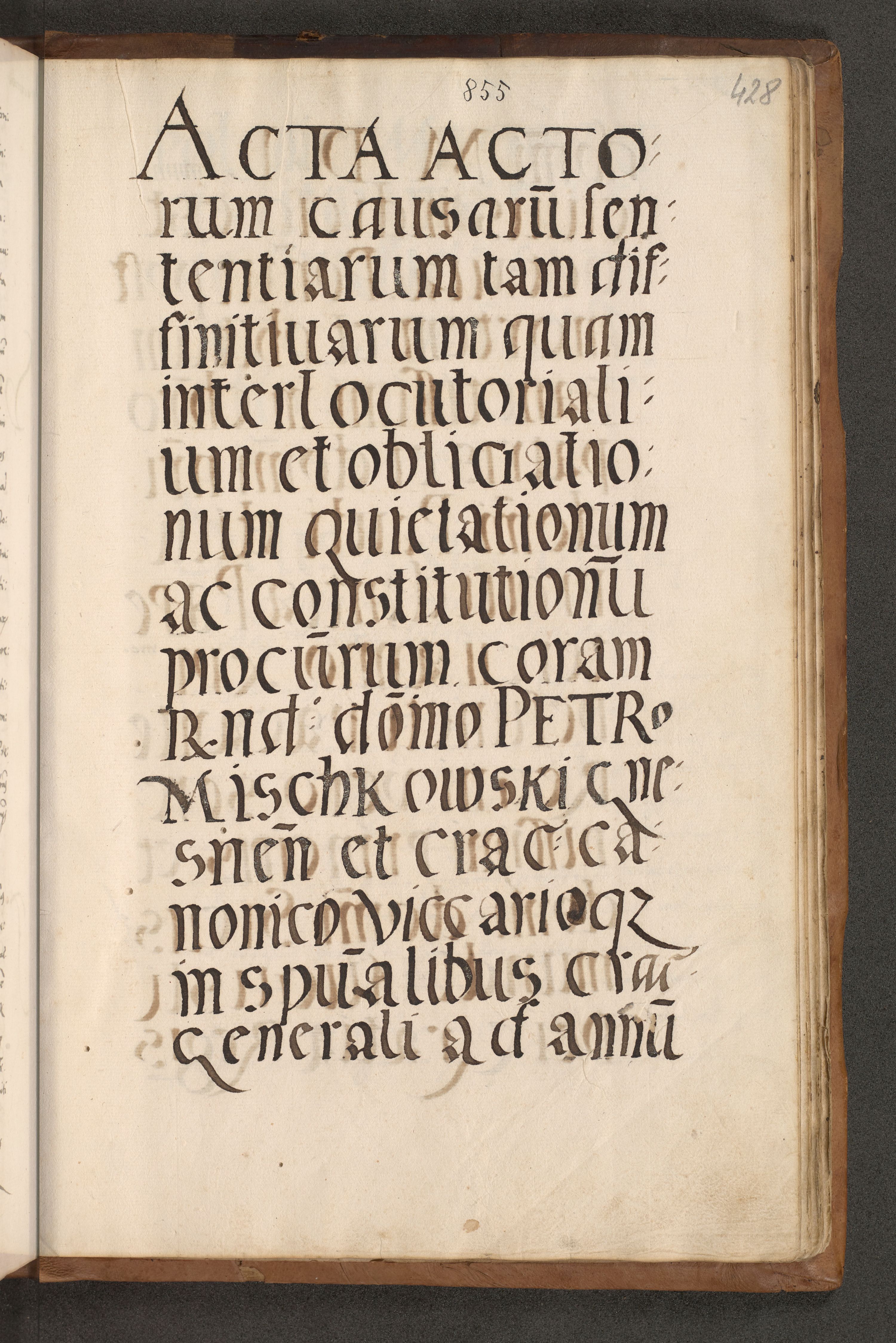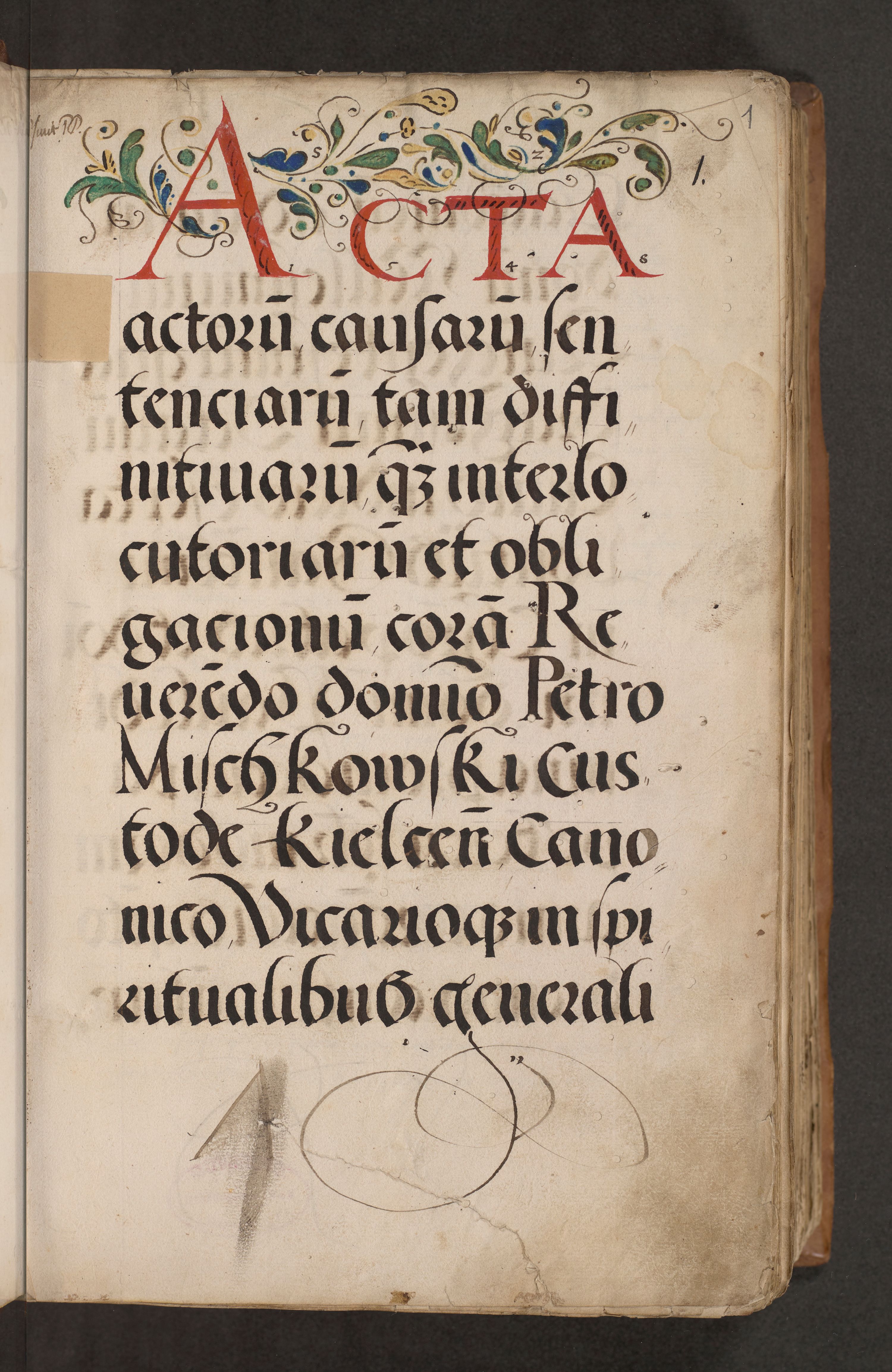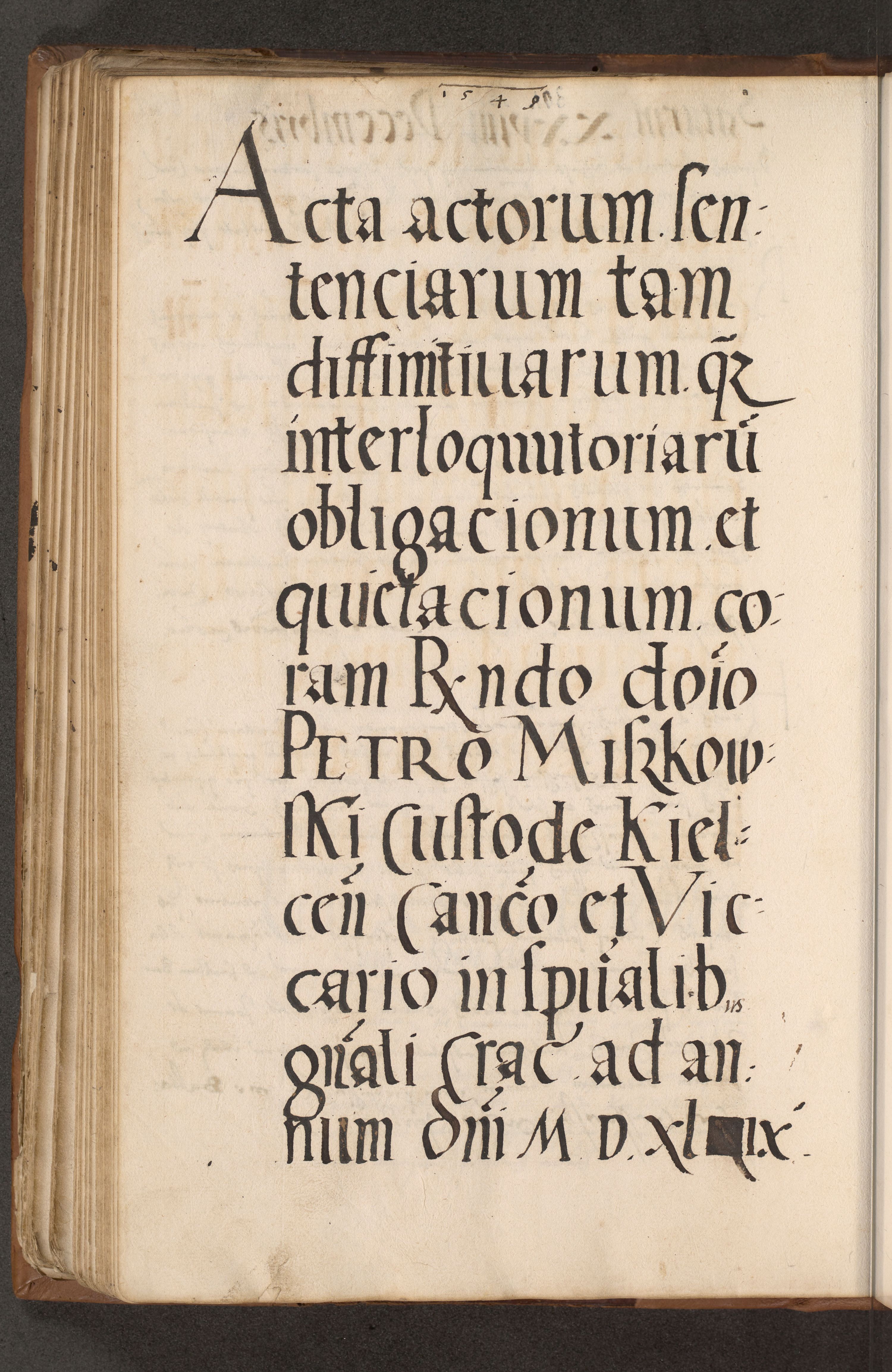 Acta actorum causarum, sentenciarum tam diffinitivarum quam interlocutoriarum et obligacionum coram reverendo domino Petro Mischkowski custode Kielcensi, canonico vicarioque in spiritualibus generali Cracoviensi ad annum Domini millesimum quingentesimum octavum, cuius indicio est sexta, pontificatus sanctissimi in Christo patris et domini nostri domini Pauli divina providencia pape tercii feliciter moderni, anno coronacionis quarto decimo continuantur