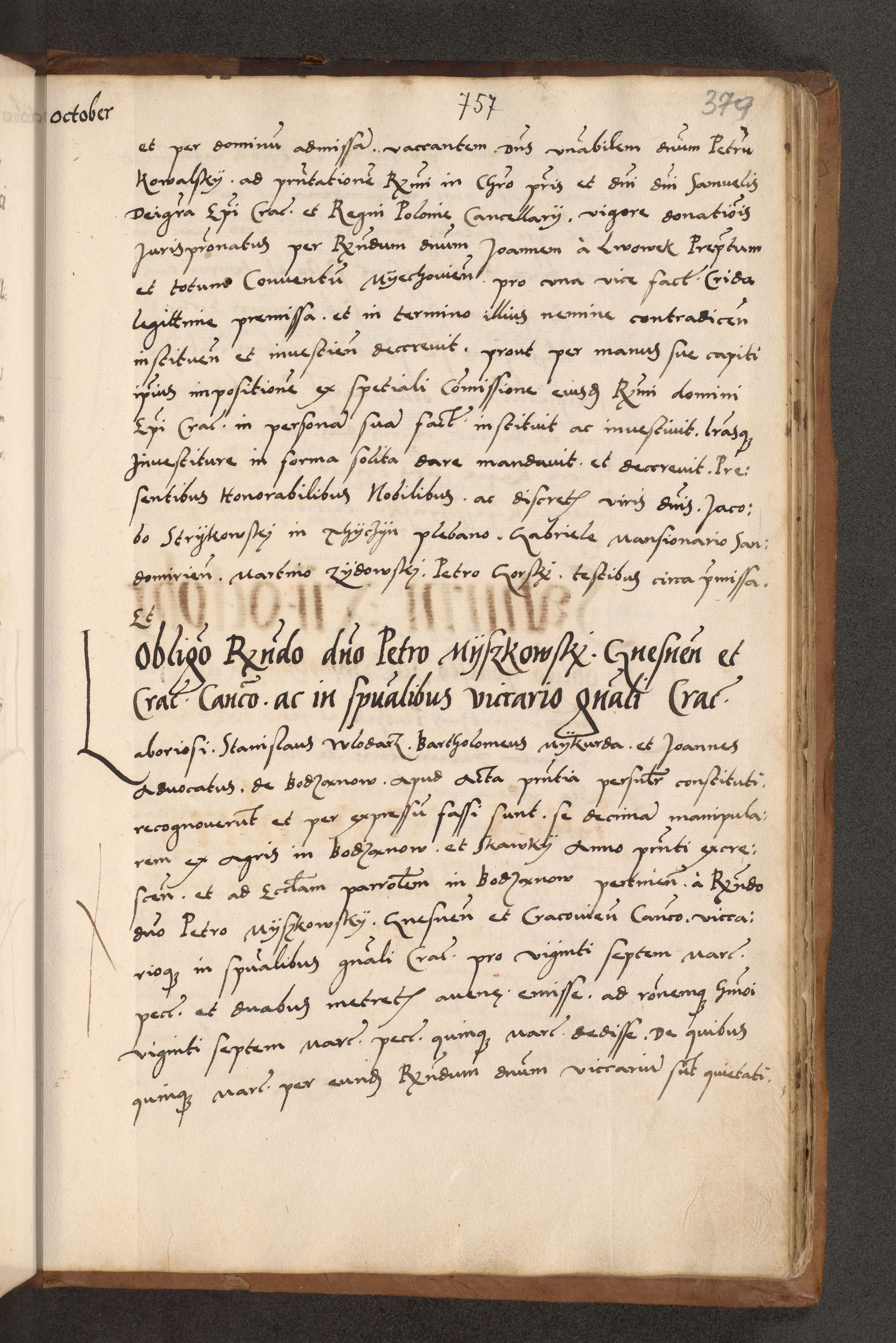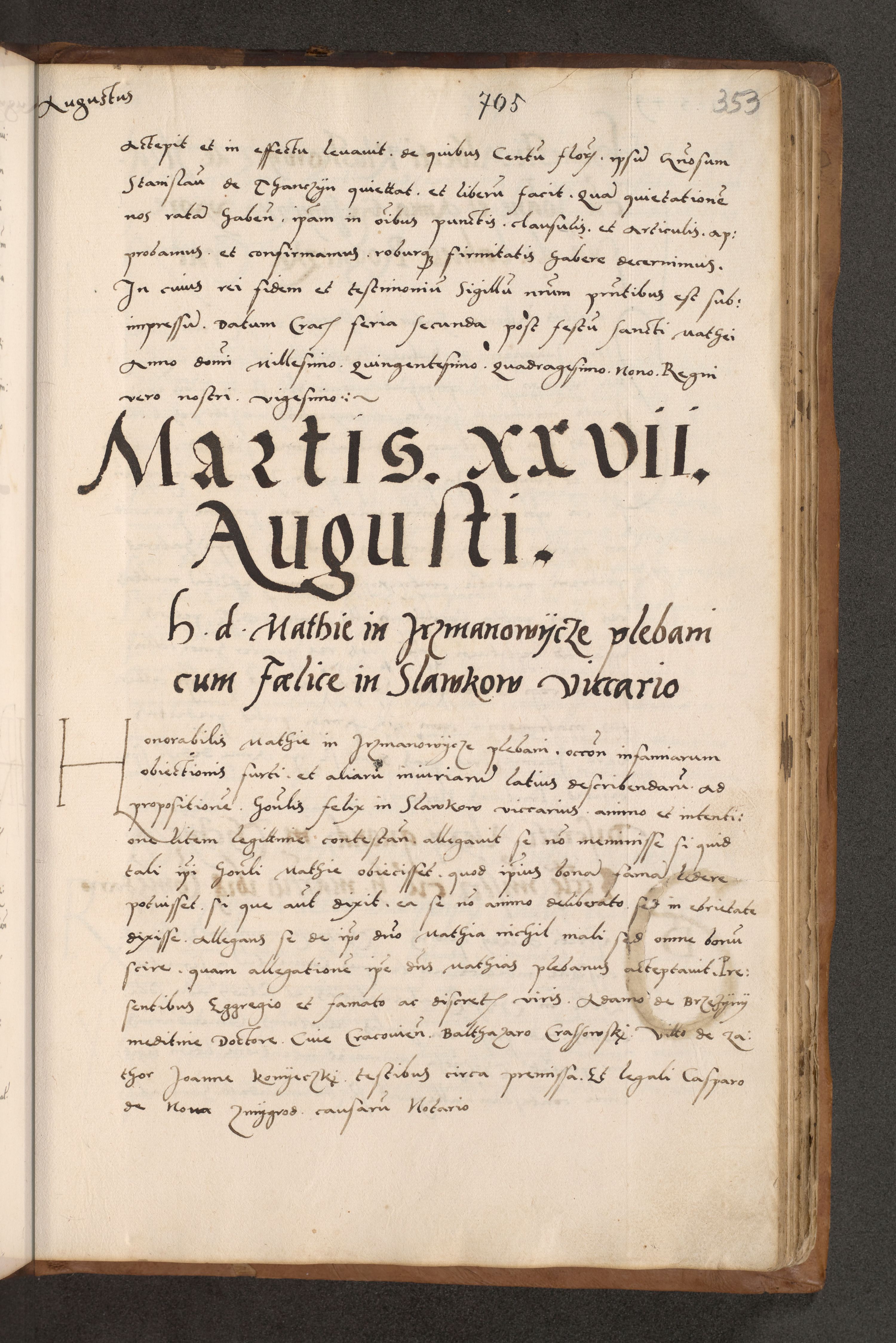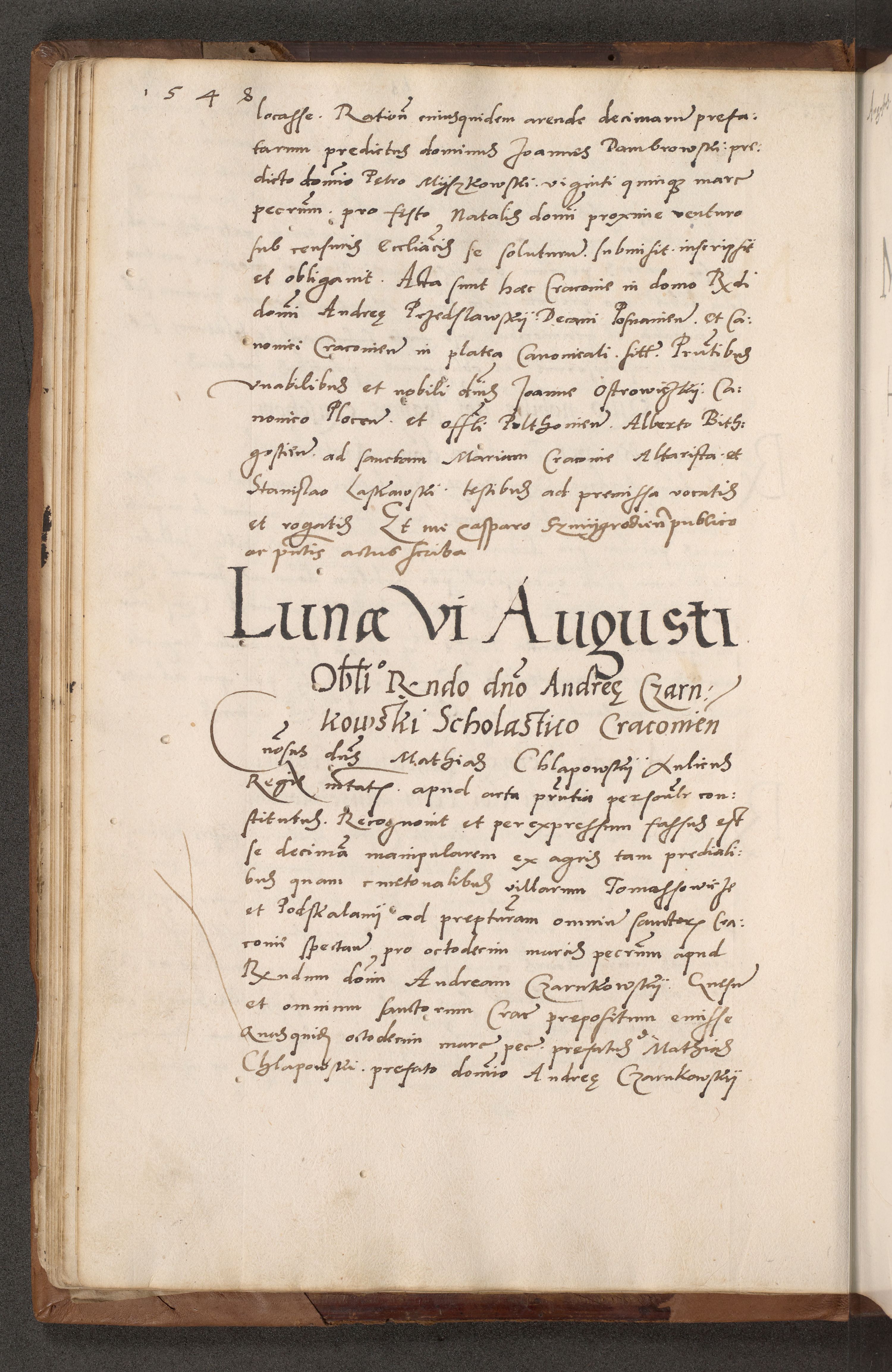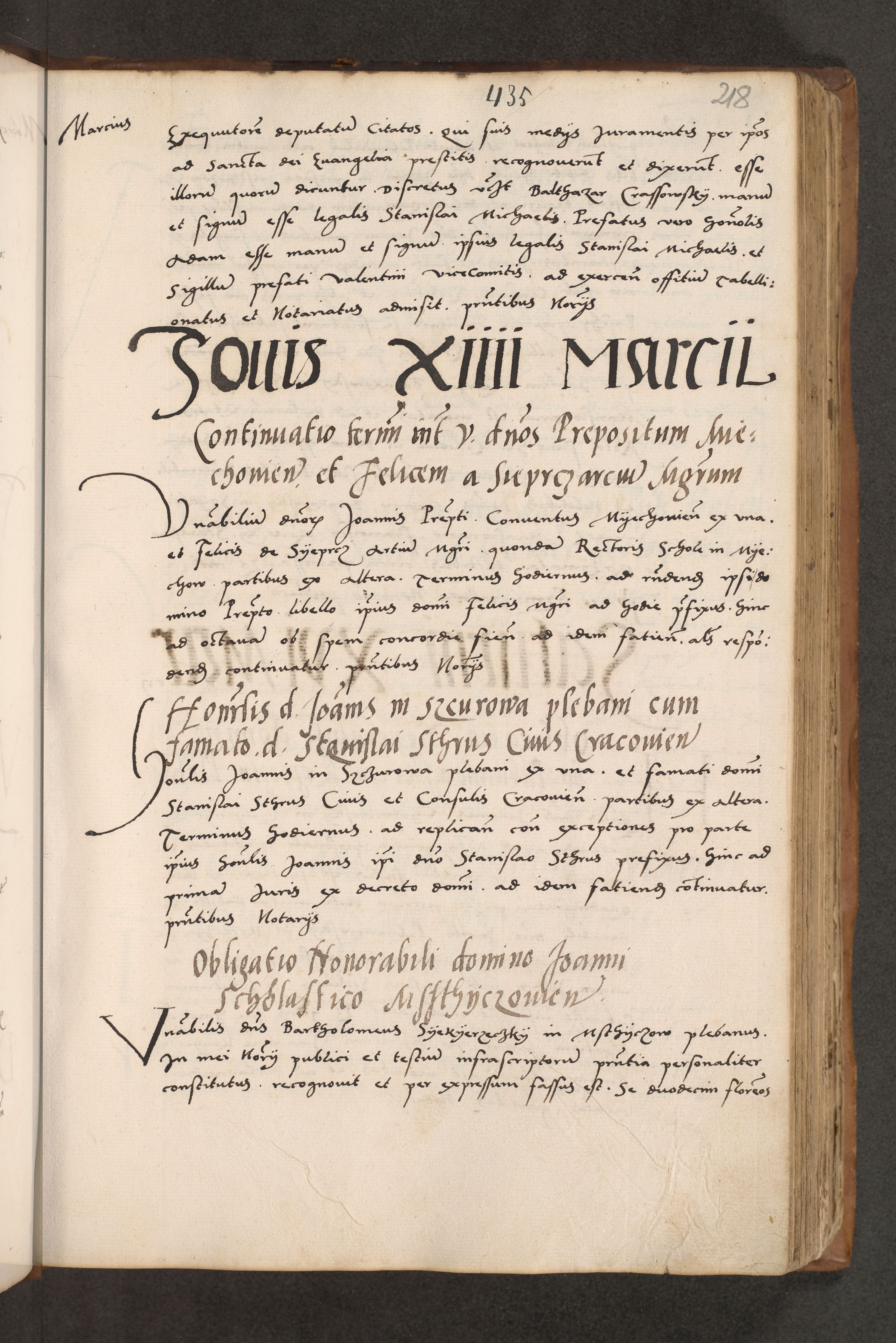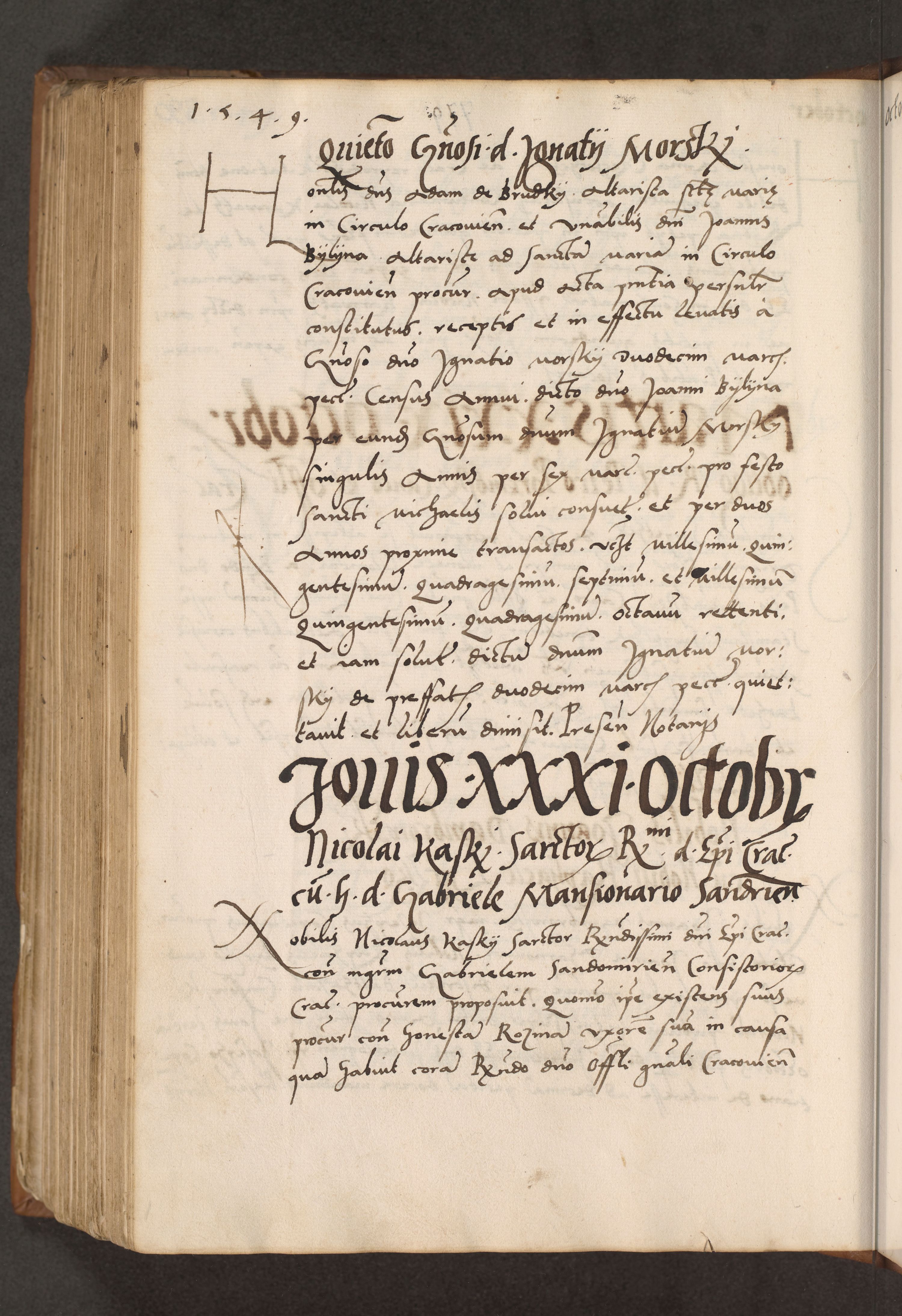 Acta actorum causarum, sentenciarum tam diffinitivarum quam interlocutoriarum et obligacionum coram reverendo domino Petro Mischkowski custode Kielcensi, canonico vicarioque in spiritualibus generali Cracoviensi ad annum Domini millesimum quingentesimum octavum, cuius indicio est sexta, pontificatus sanctissimi in Christo patris et domini nostri domini Pauli divina providencia pape tercii feliciter moderni, anno coronacionis quarto decimo continuantur