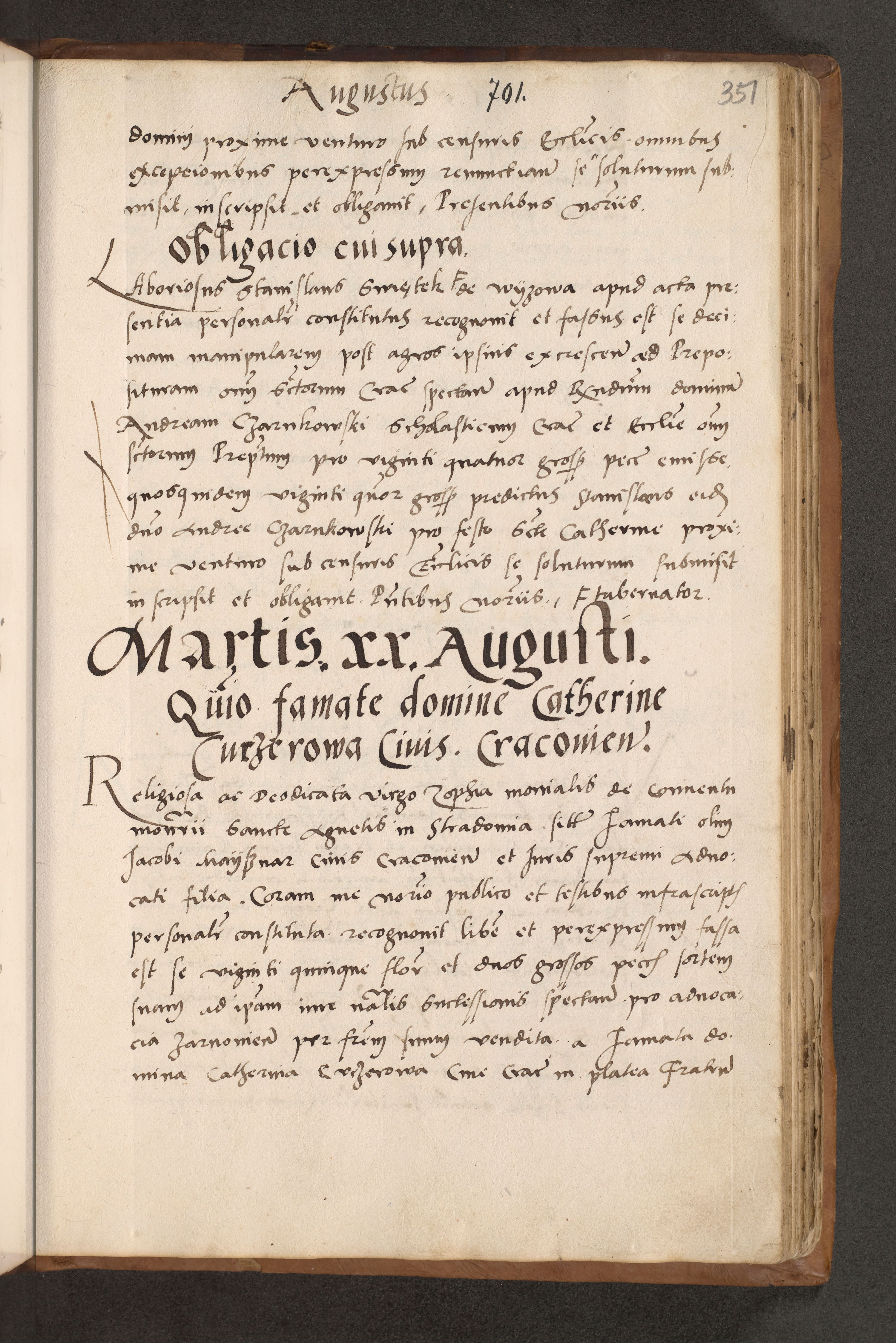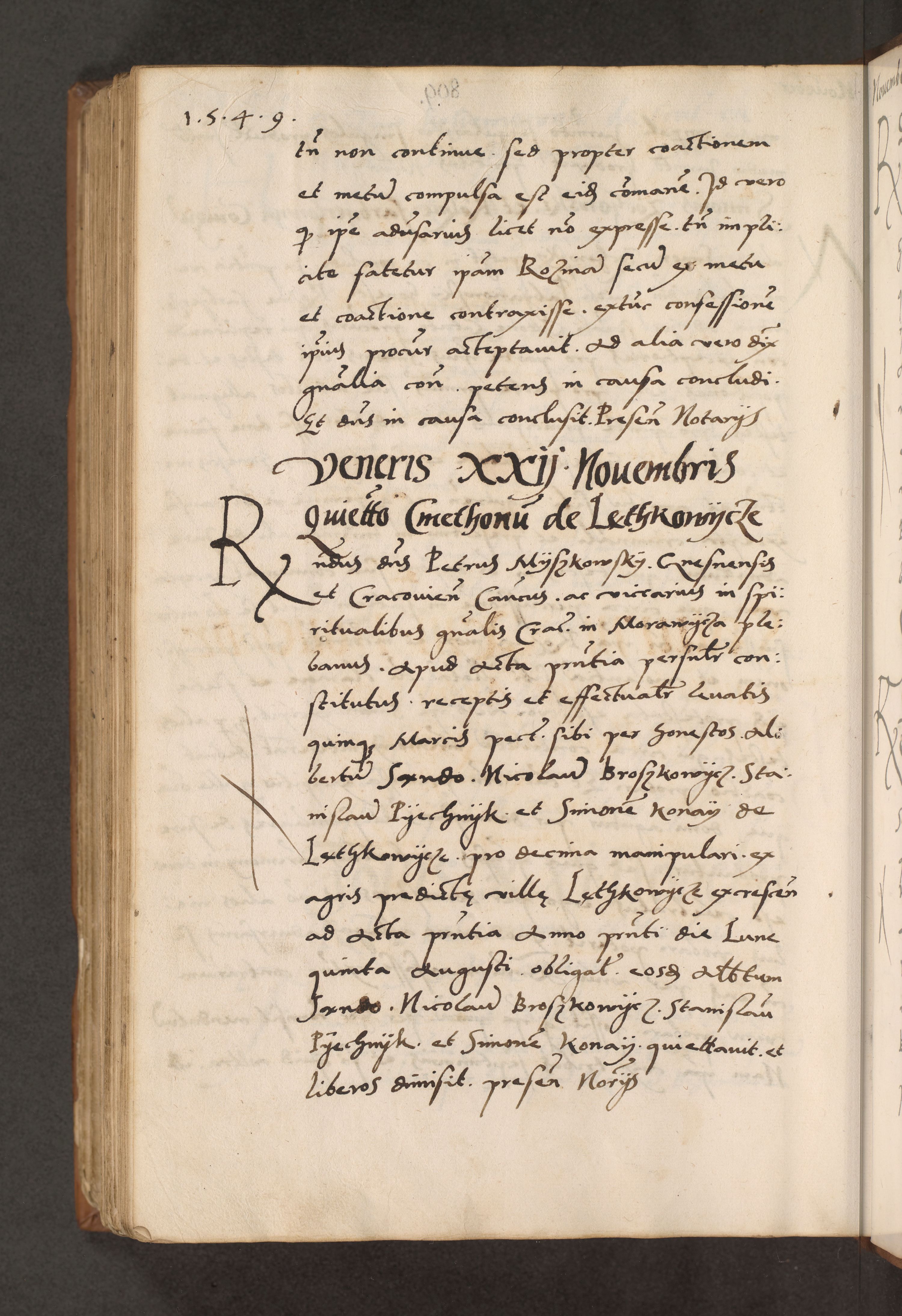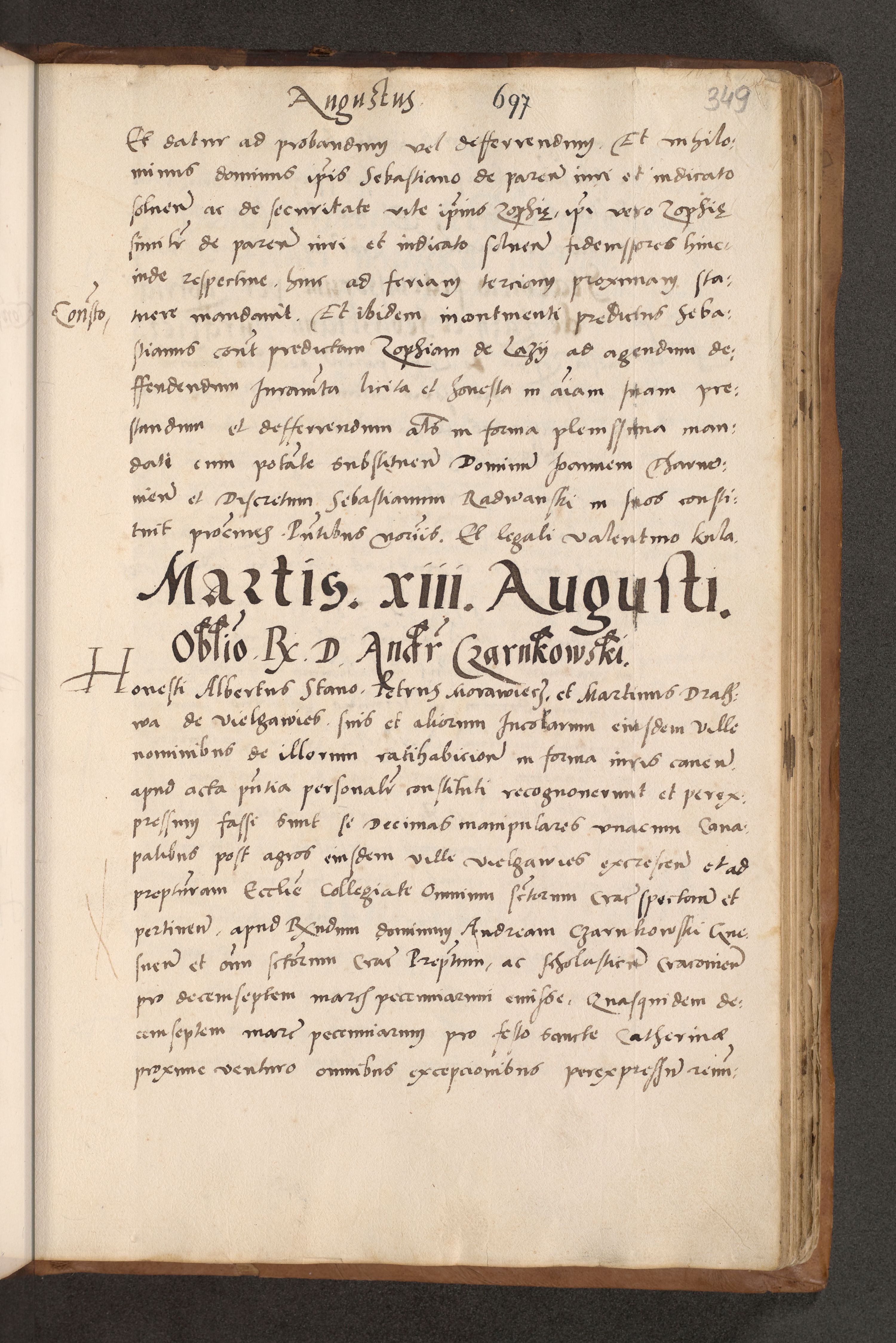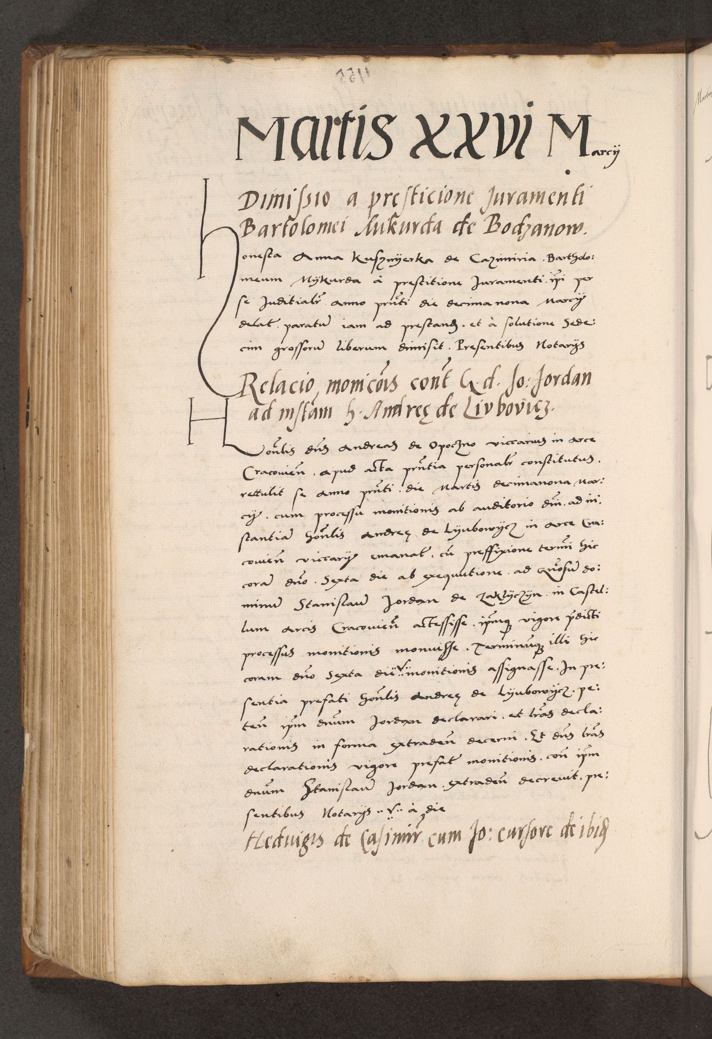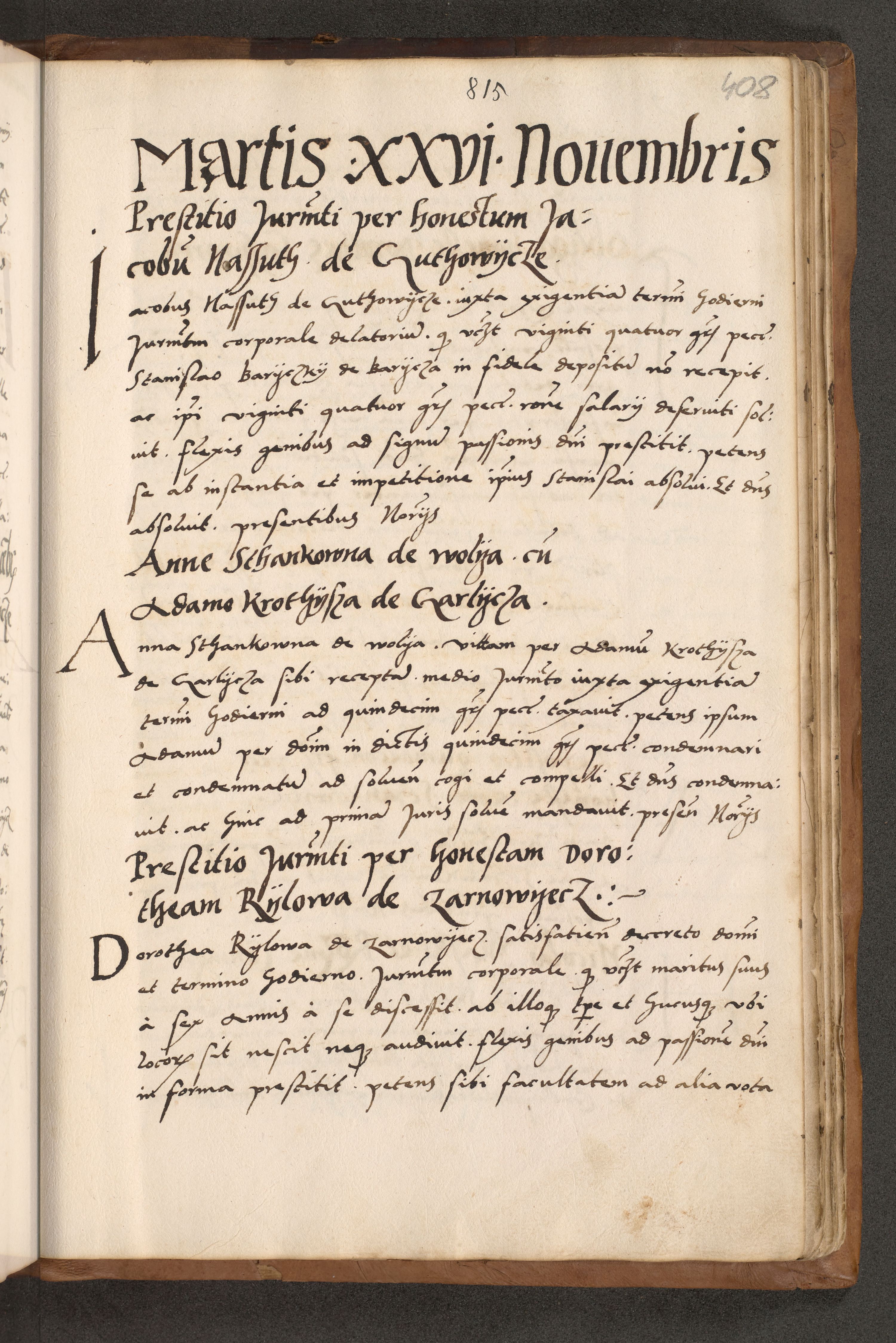 Acta actorum causarum, sentenciarum tam diffinitivarum quam interlocutoriarum et obligacionum coram reverendo domino Petro Mischkowski custode Kielcensi, canonico vicarioque in spiritualibus generali Cracoviensi ad annum Domini millesimum quingentesimum octavum, cuius indicio est sexta, pontificatus sanctissimi in Christo patris et domini nostri domini Pauli divina providencia pape tercii feliciter moderni, anno coronacionis quarto decimo continuantur