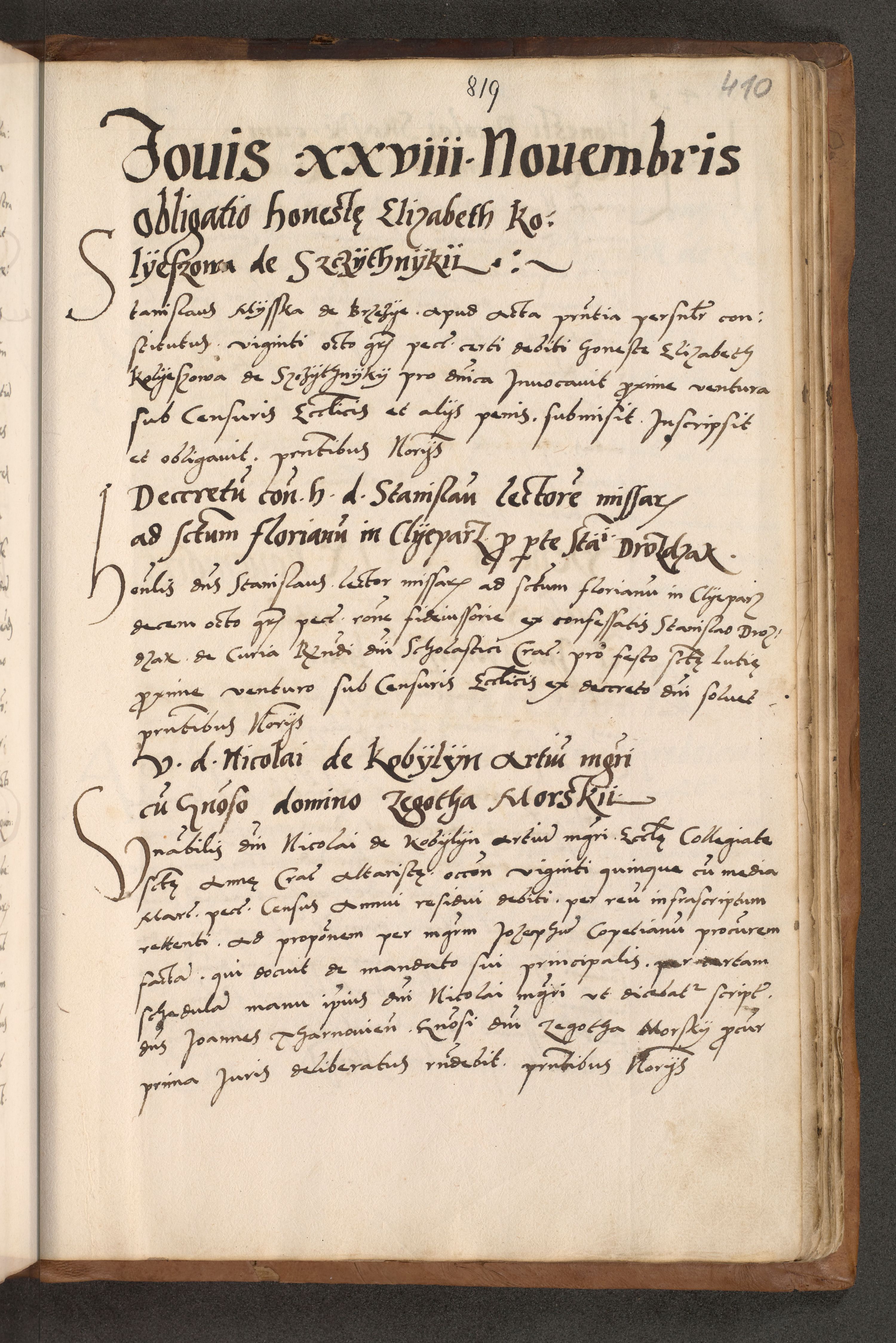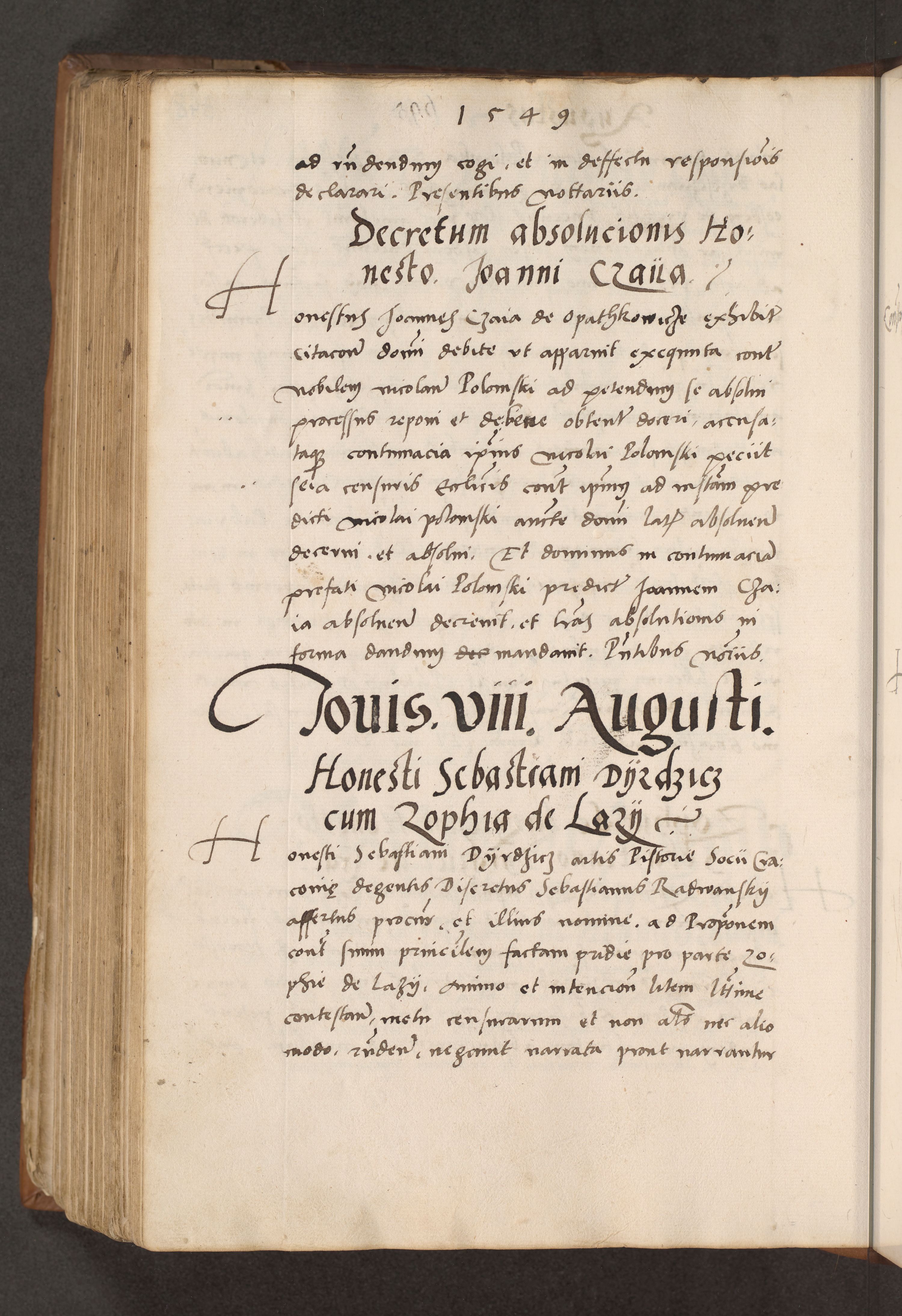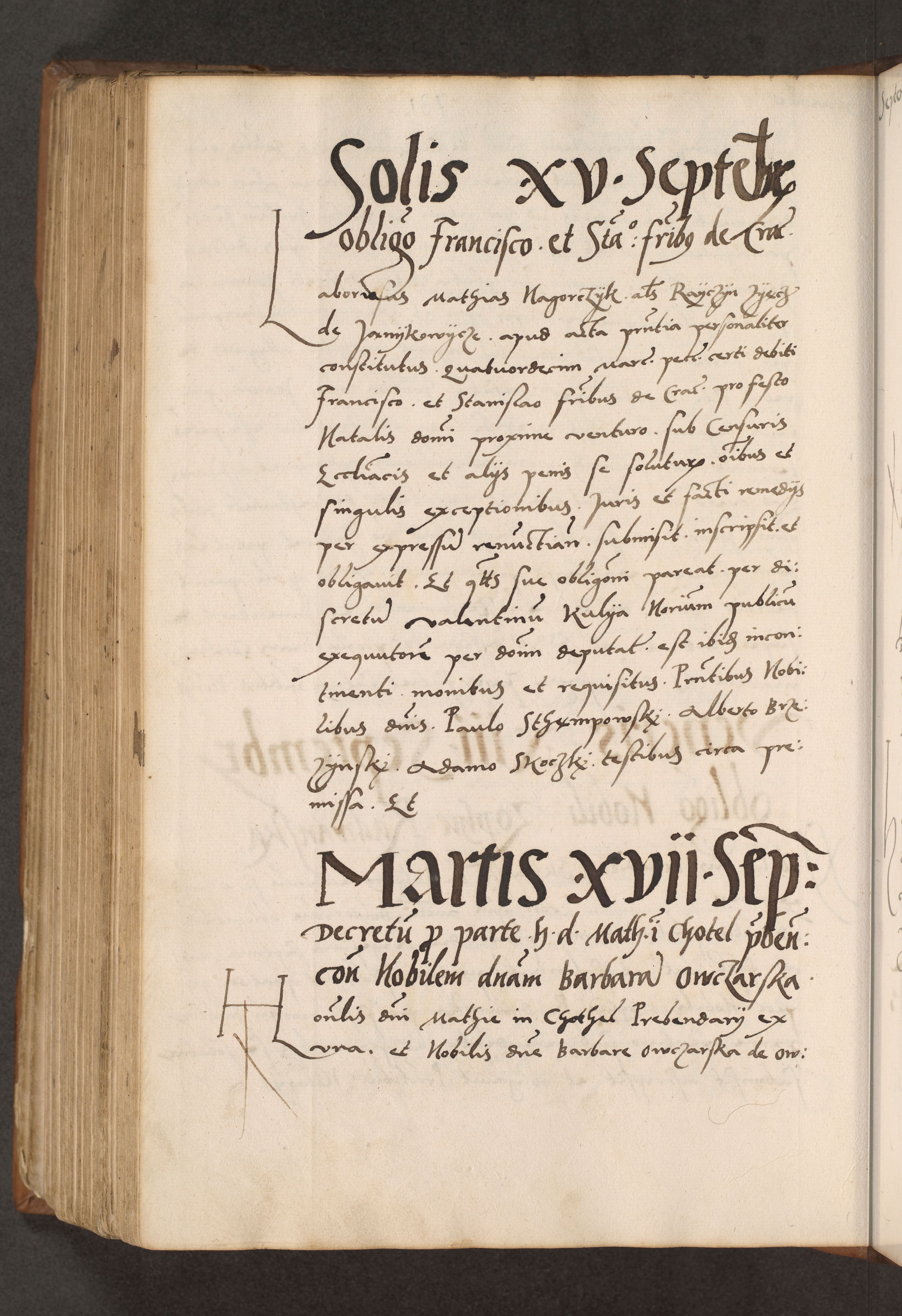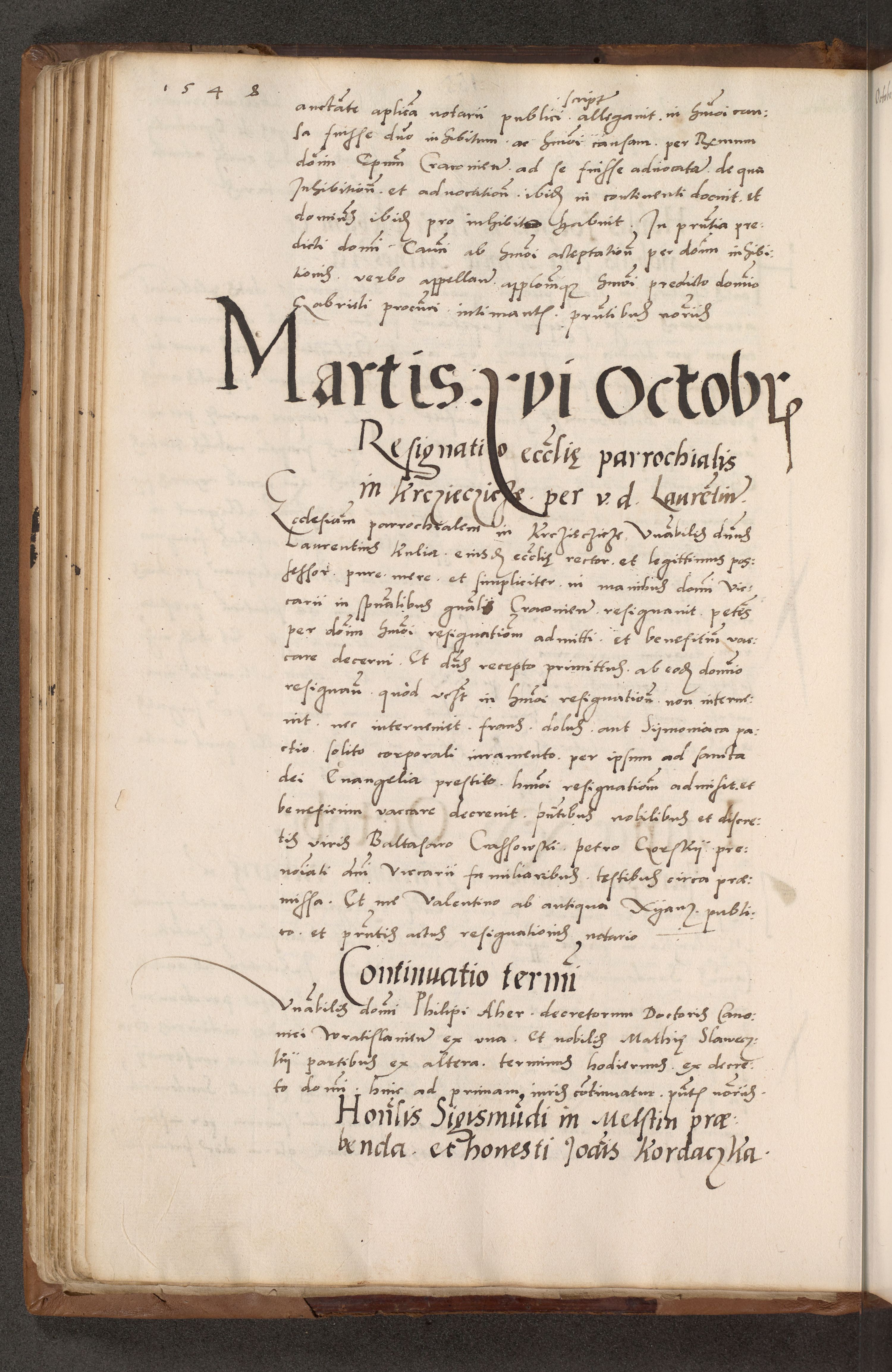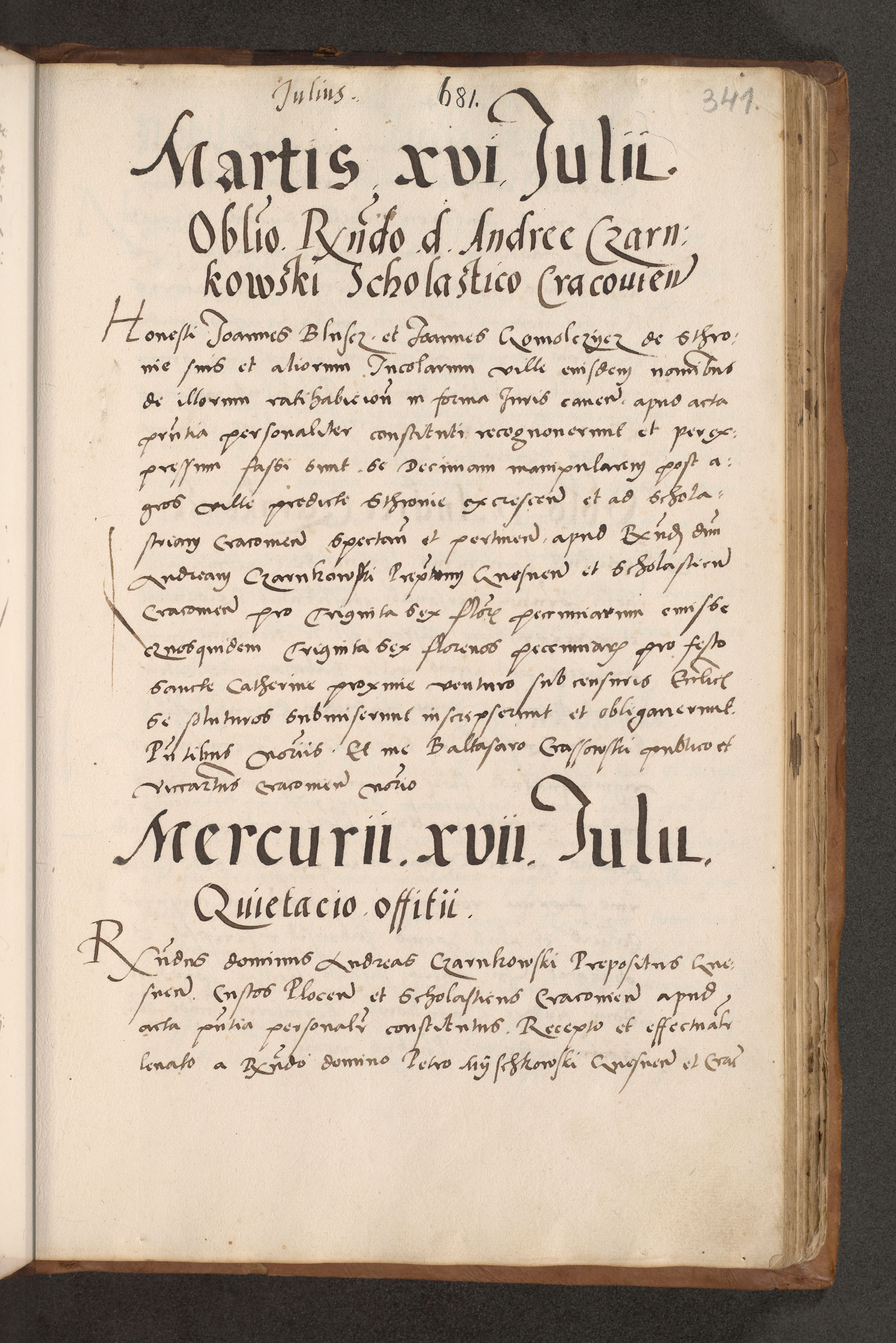 Acta actorum causarum, sentenciarum tam diffinitivarum quam interlocutoriarum et obligacionum coram reverendo domino Petro Mischkowski custode Kielcensi, canonico vicarioque in spiritualibus generali Cracoviensi ad annum Domini millesimum quingentesimum octavum, cuius indicio est sexta, pontificatus sanctissimi in Christo patris et domini nostri domini Pauli divina providencia pape tercii feliciter moderni, anno coronacionis quarto decimo continuantur