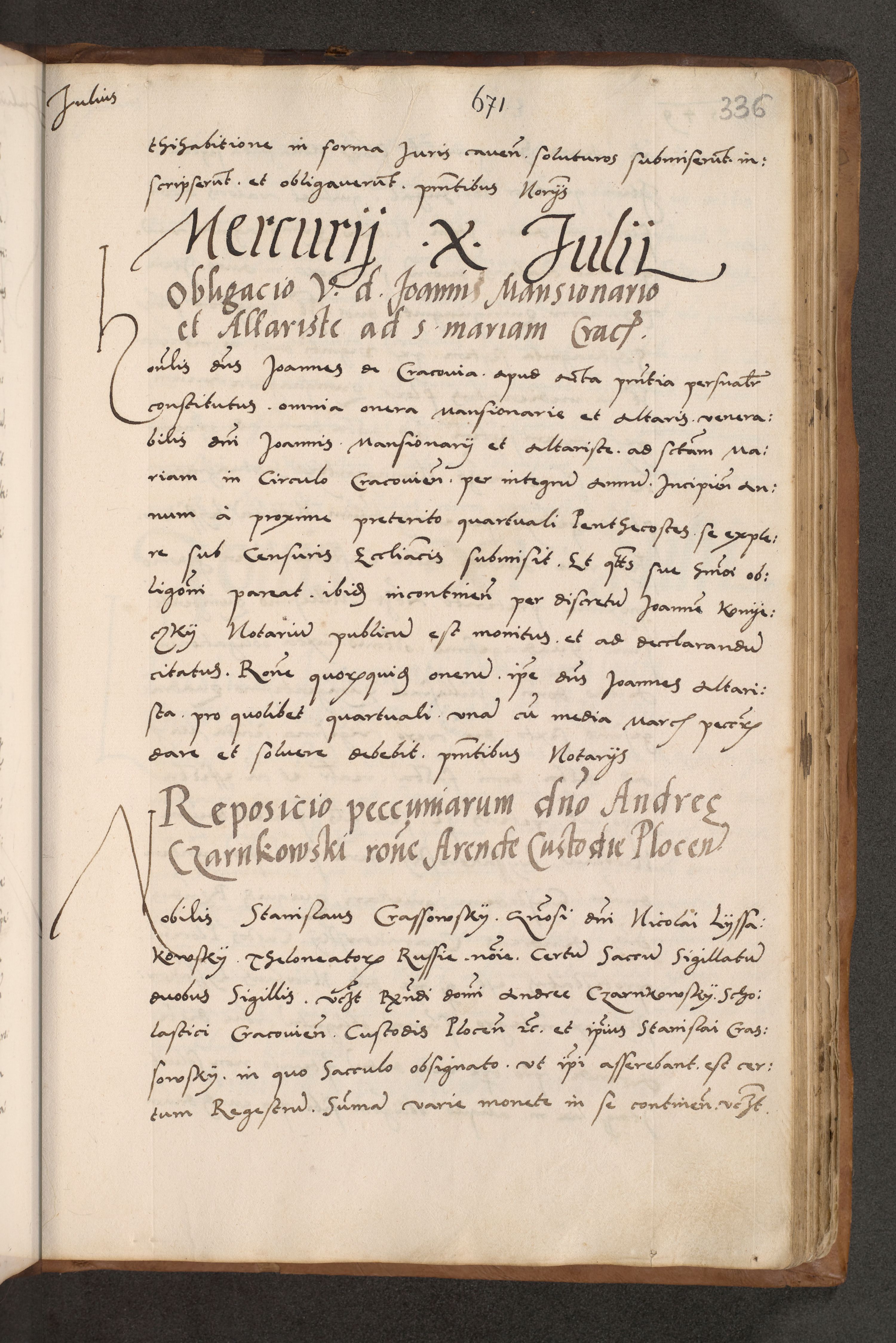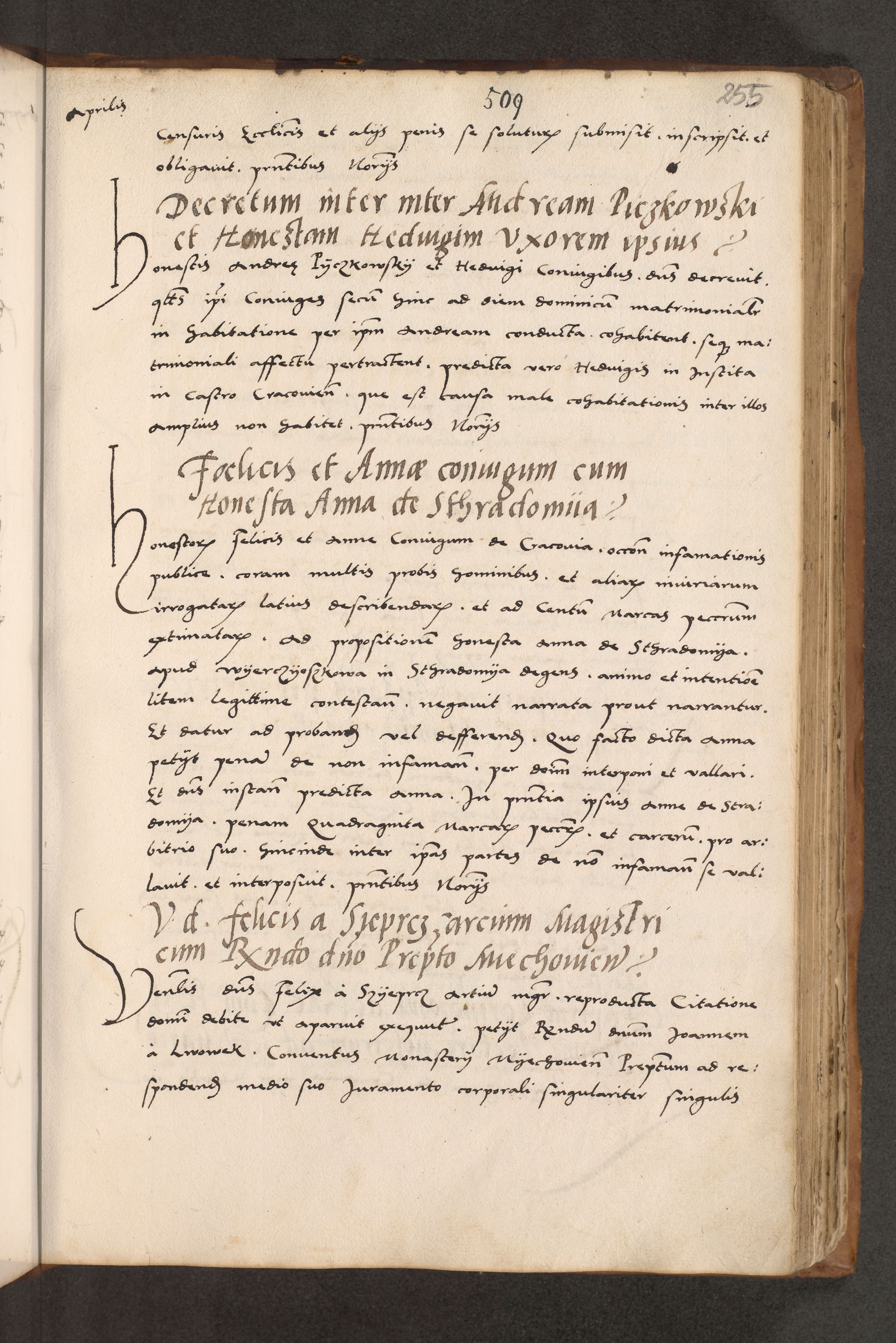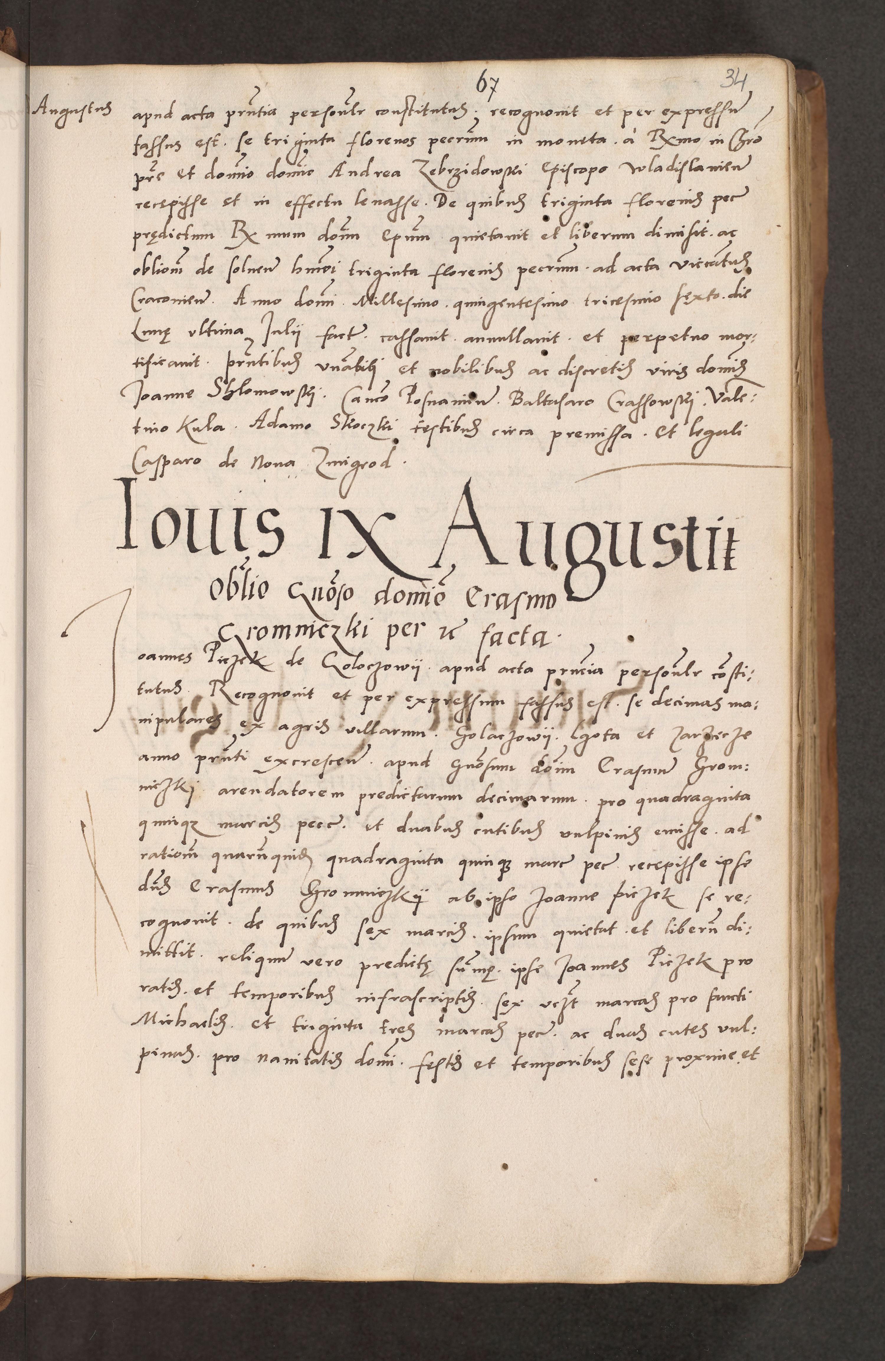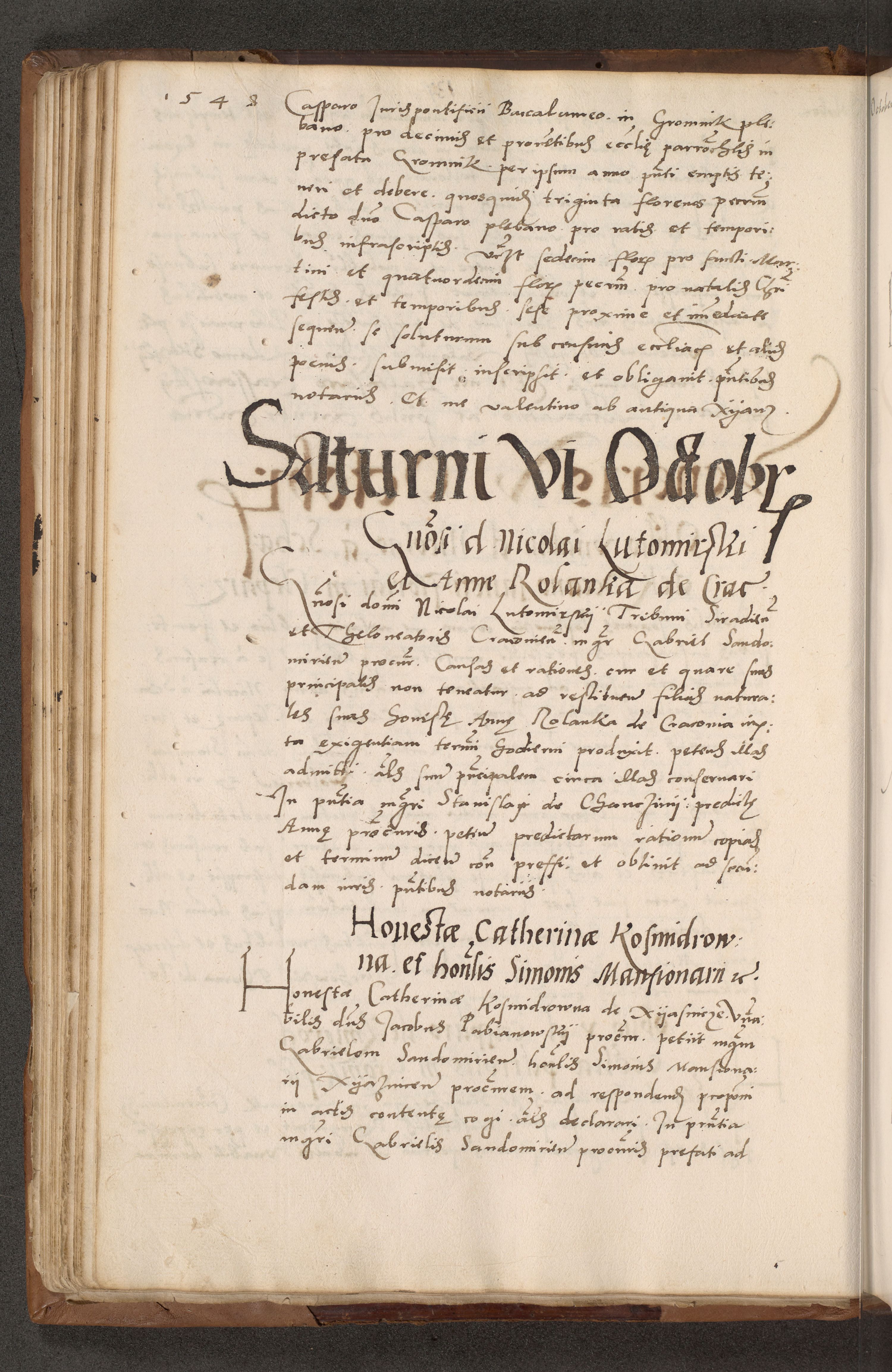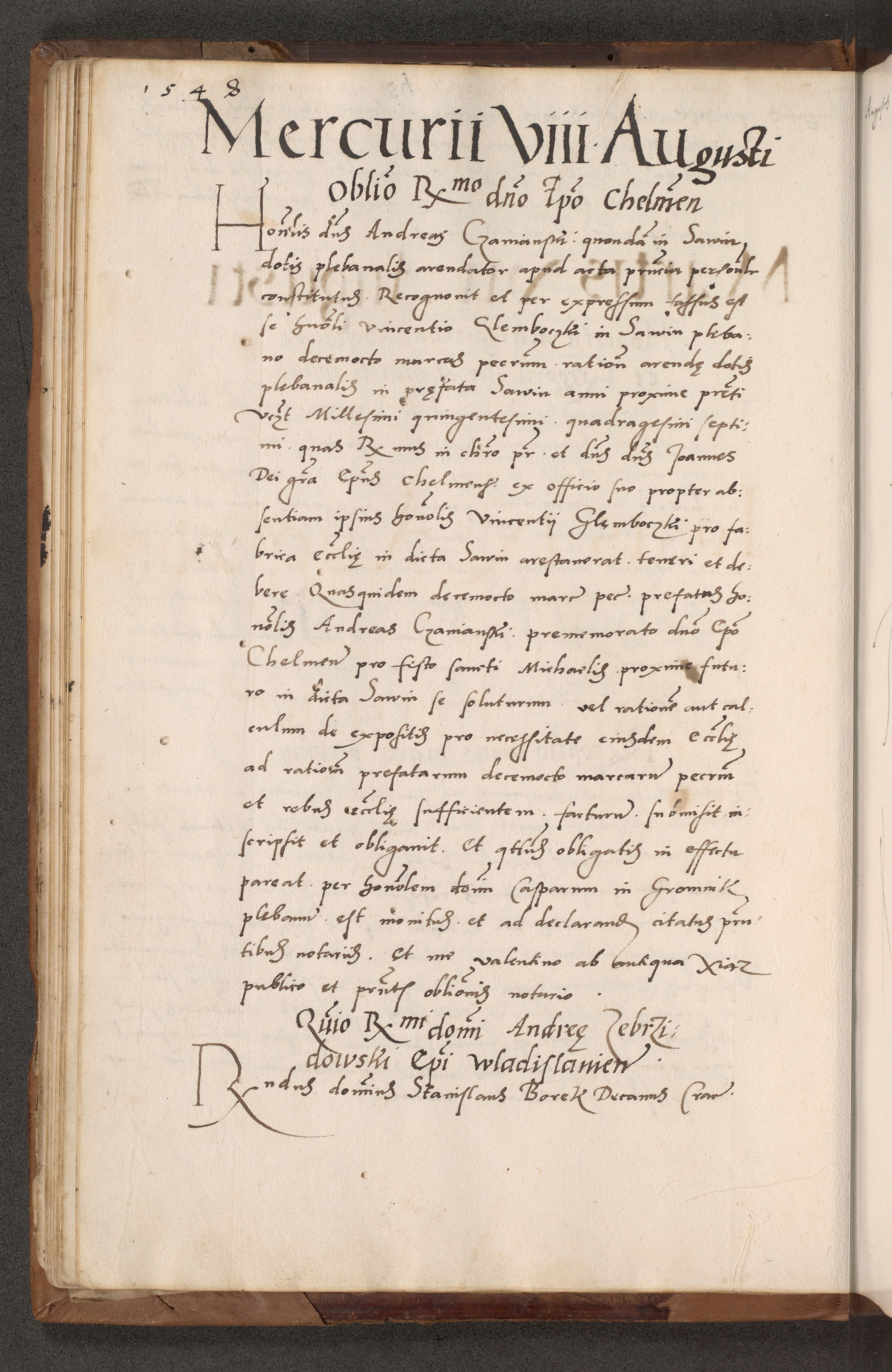 Acta actorum causarum, sentenciarum tam diffinitivarum quam interlocutoriarum et obligacionum coram reverendo domino Petro Mischkowski custode Kielcensi, canonico vicarioque in spiritualibus generali Cracoviensi ad annum Domini millesimum quingentesimum octavum, cuius indicio est sexta, pontificatus sanctissimi in Christo patris et domini nostri domini Pauli divina providencia pape tercii feliciter moderni, anno coronacionis quarto decimo continuantur