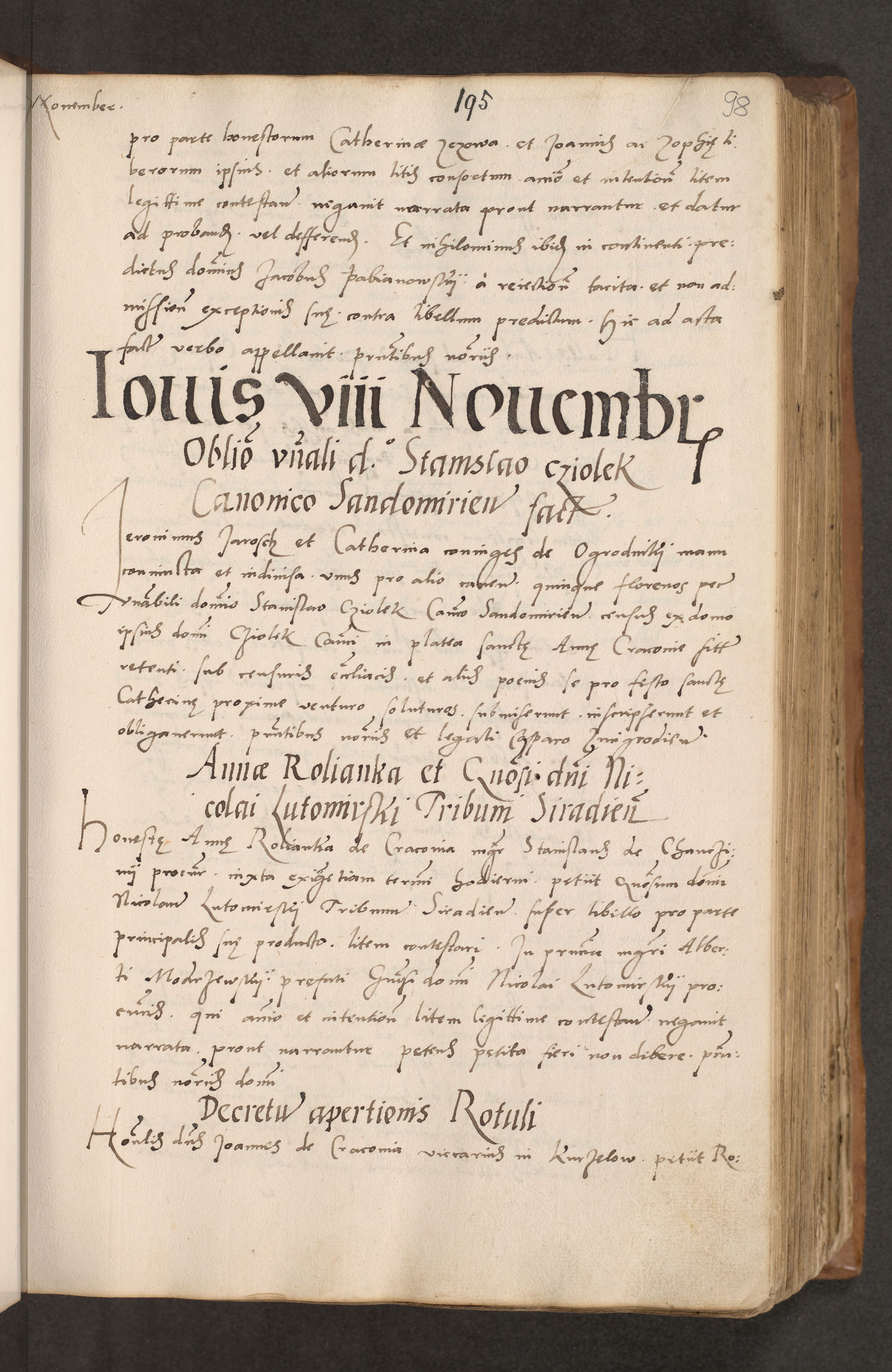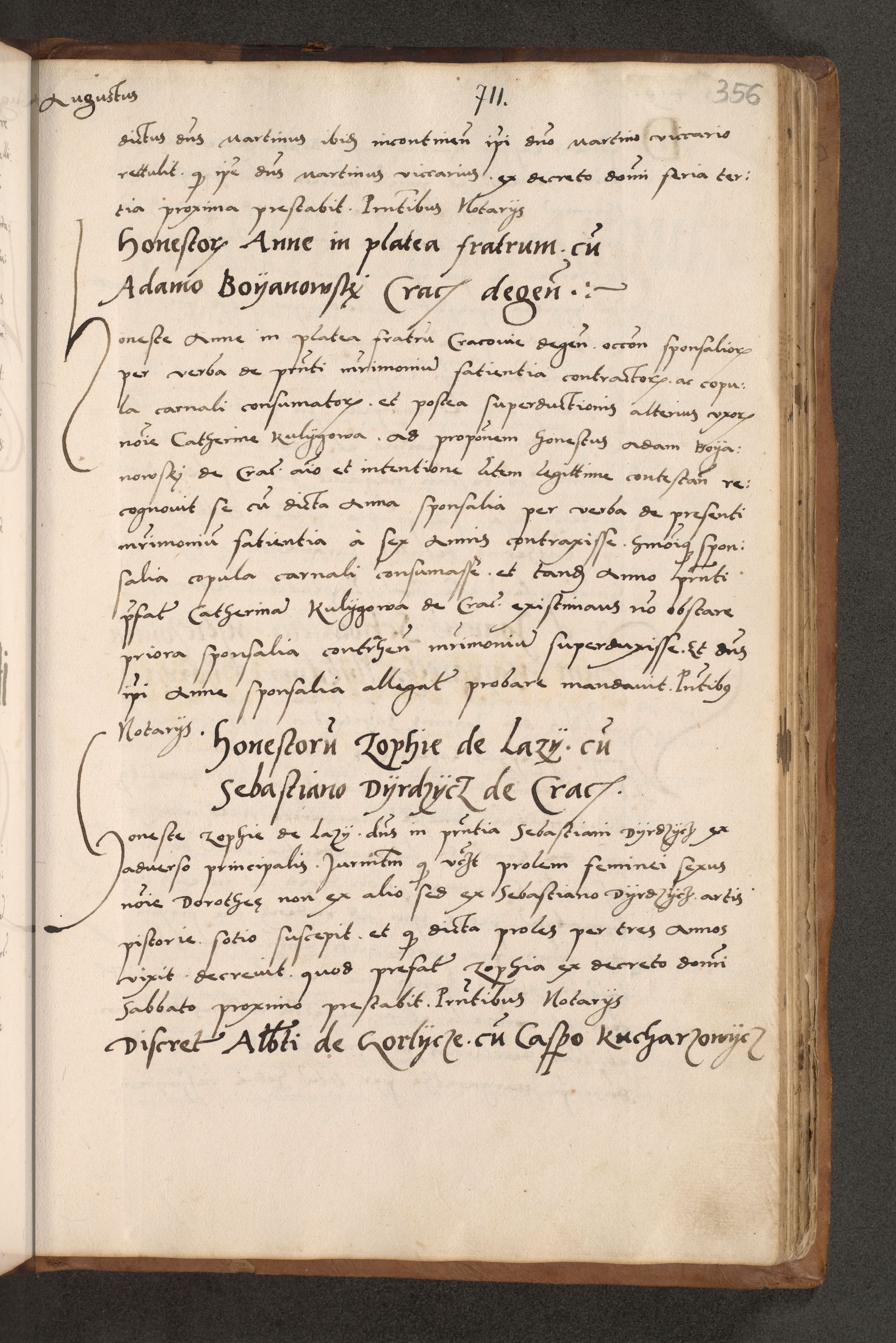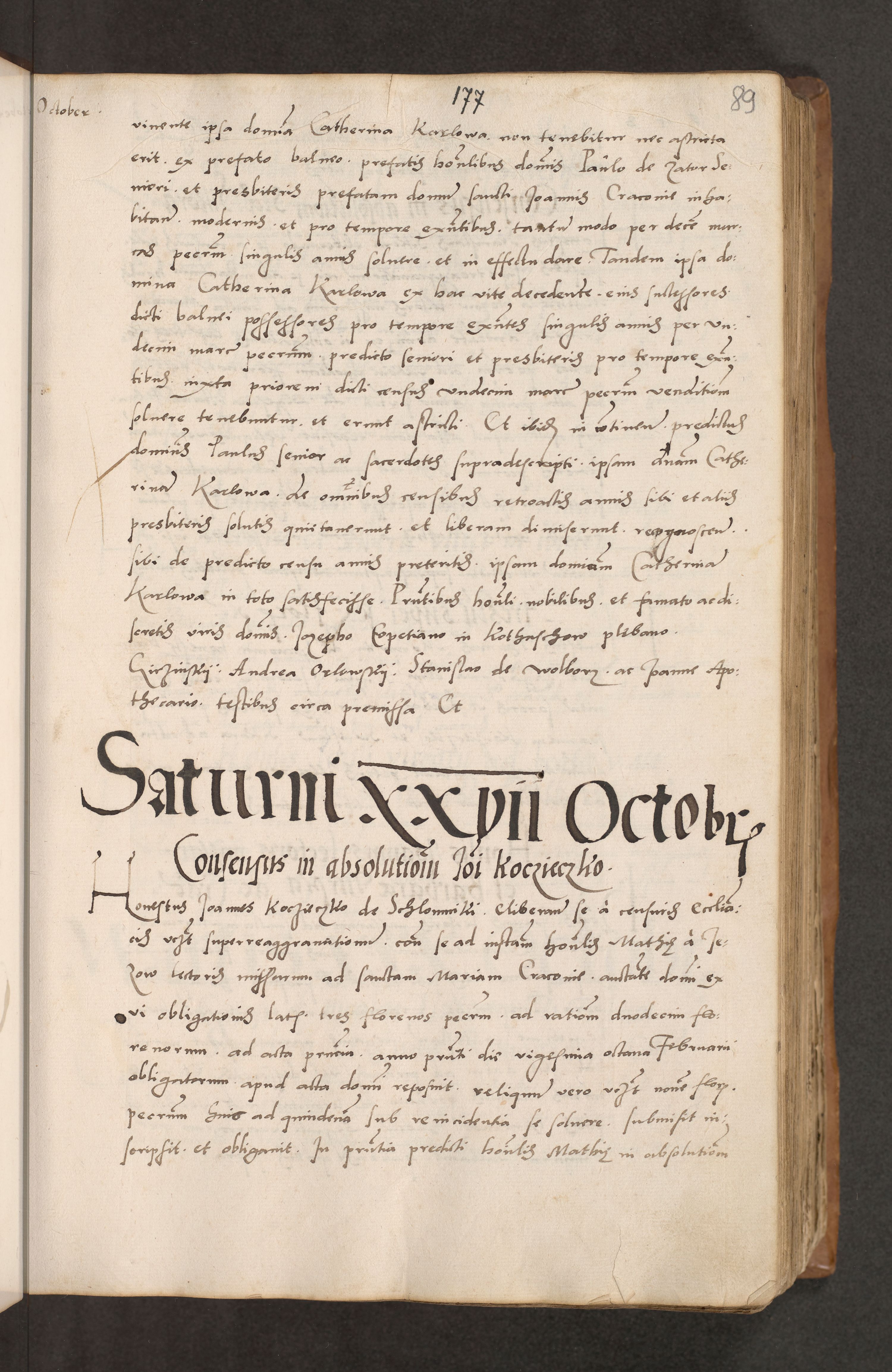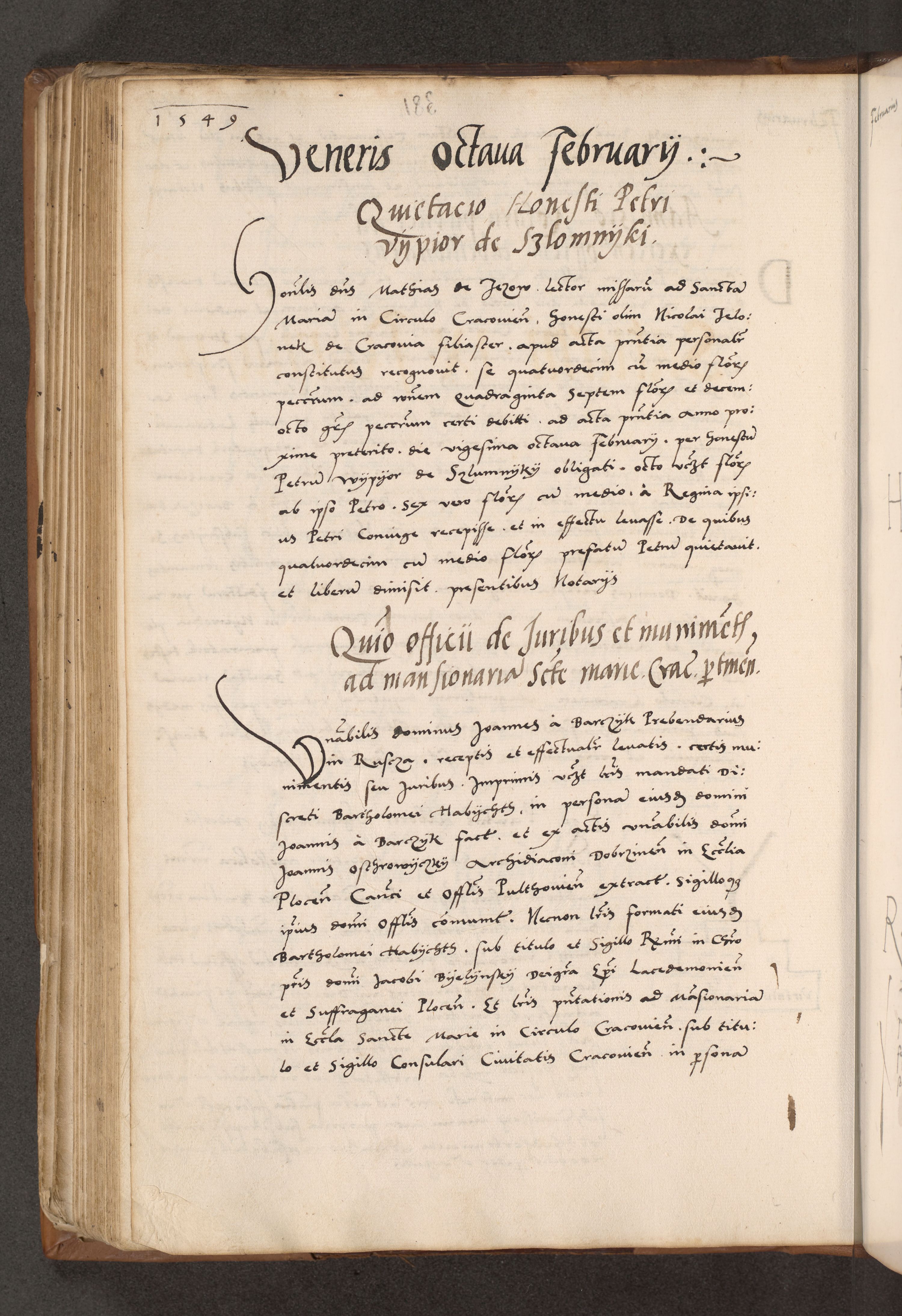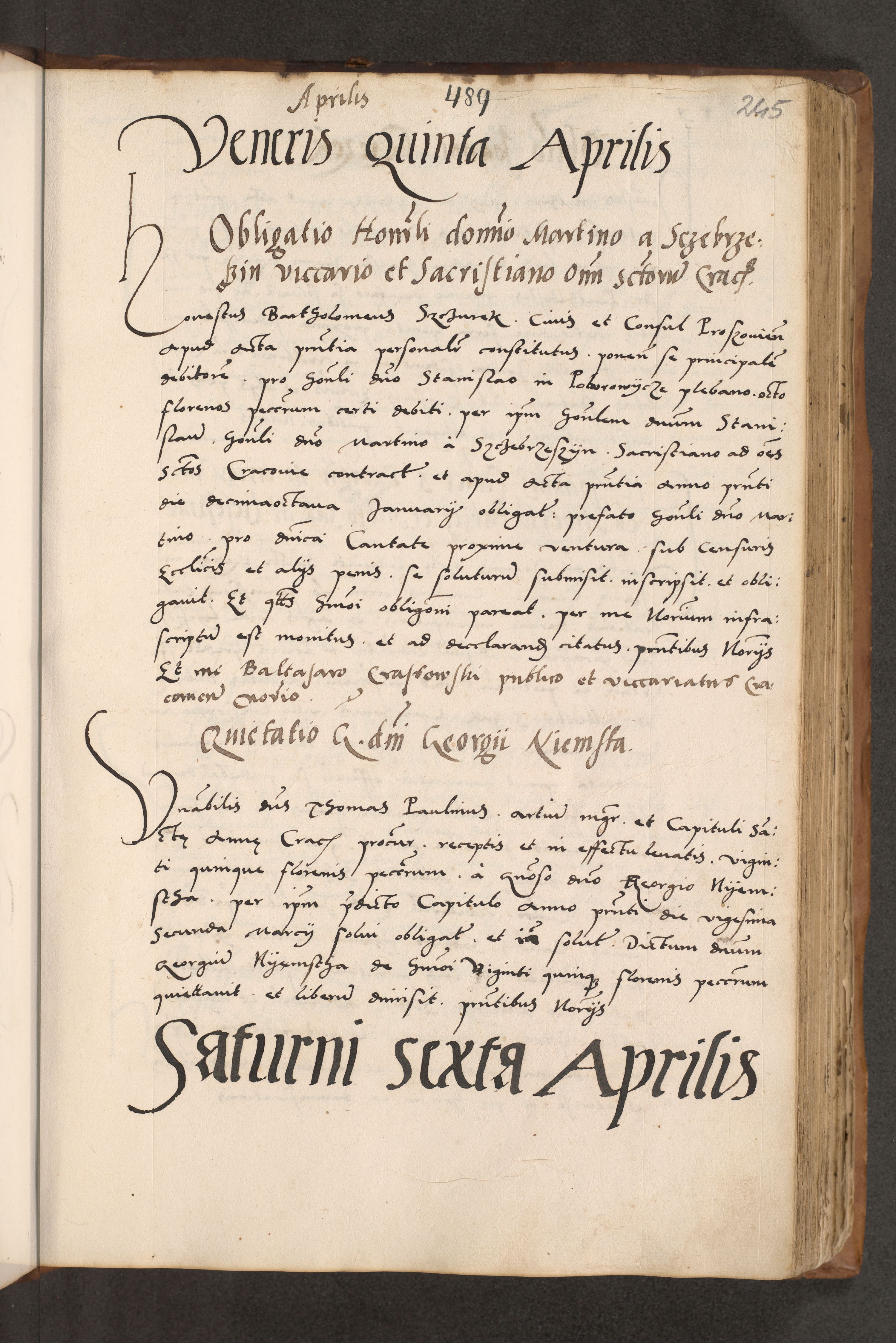 Acta actorum causarum, sentenciarum tam diffinitivarum quam interlocutoriarum et obligacionum coram reverendo domino Petro Mischkowski custode Kielcensi, canonico vicarioque in spiritualibus generali Cracoviensi ad annum Domini millesimum quingentesimum octavum, cuius indicio est sexta, pontificatus sanctissimi in Christo patris et domini nostri domini Pauli divina providencia pape tercii feliciter moderni, anno coronacionis quarto decimo continuantur