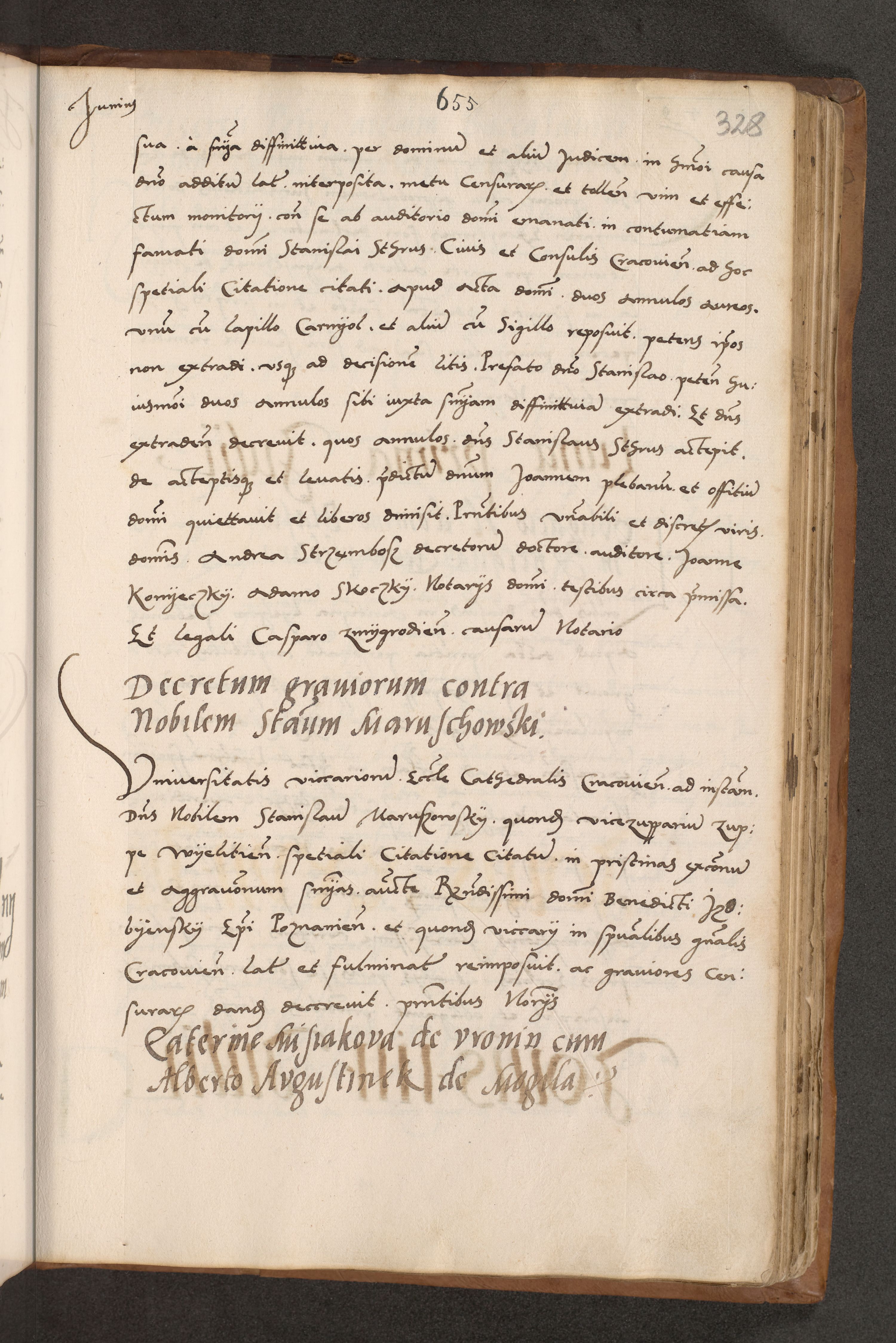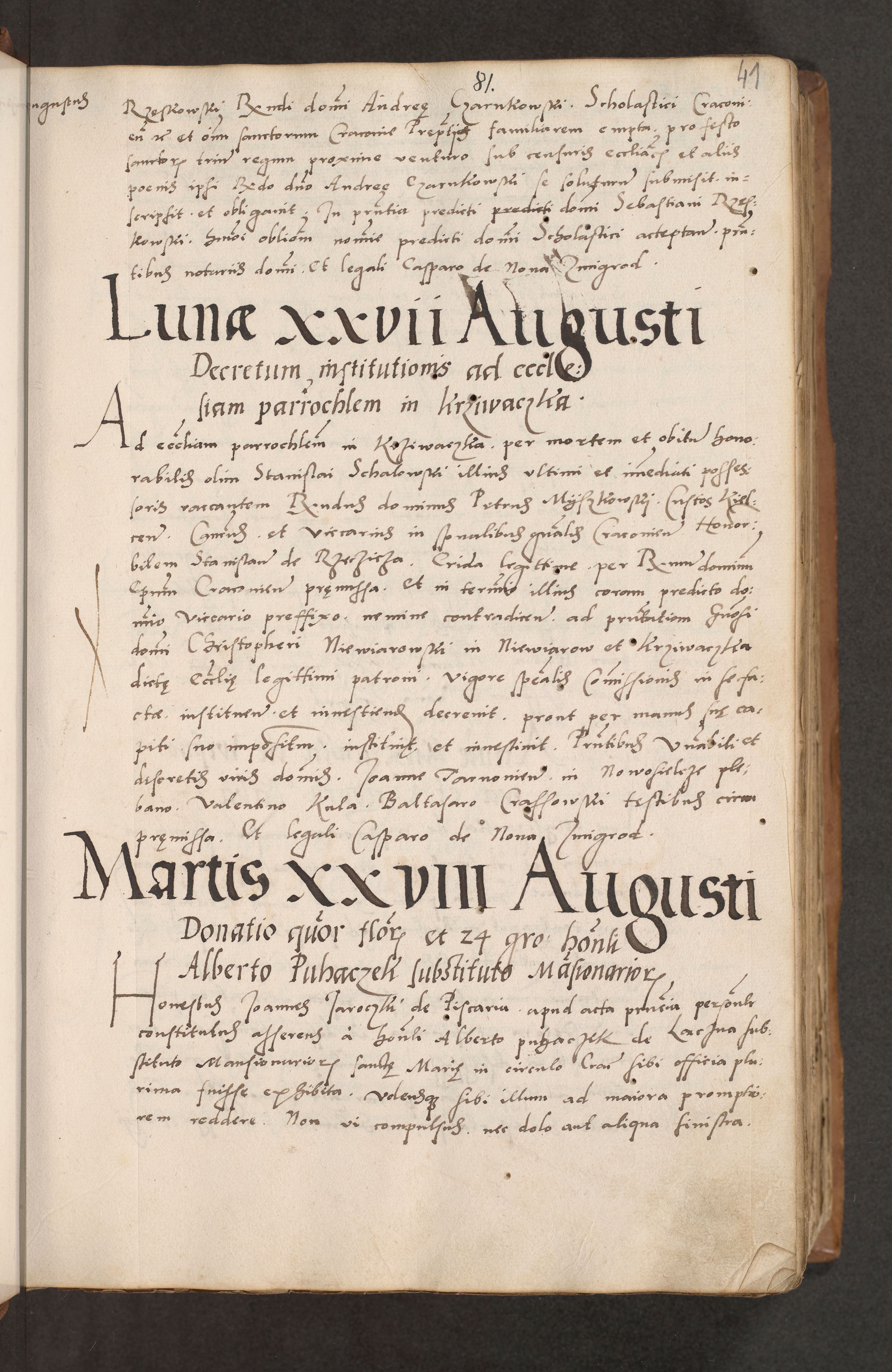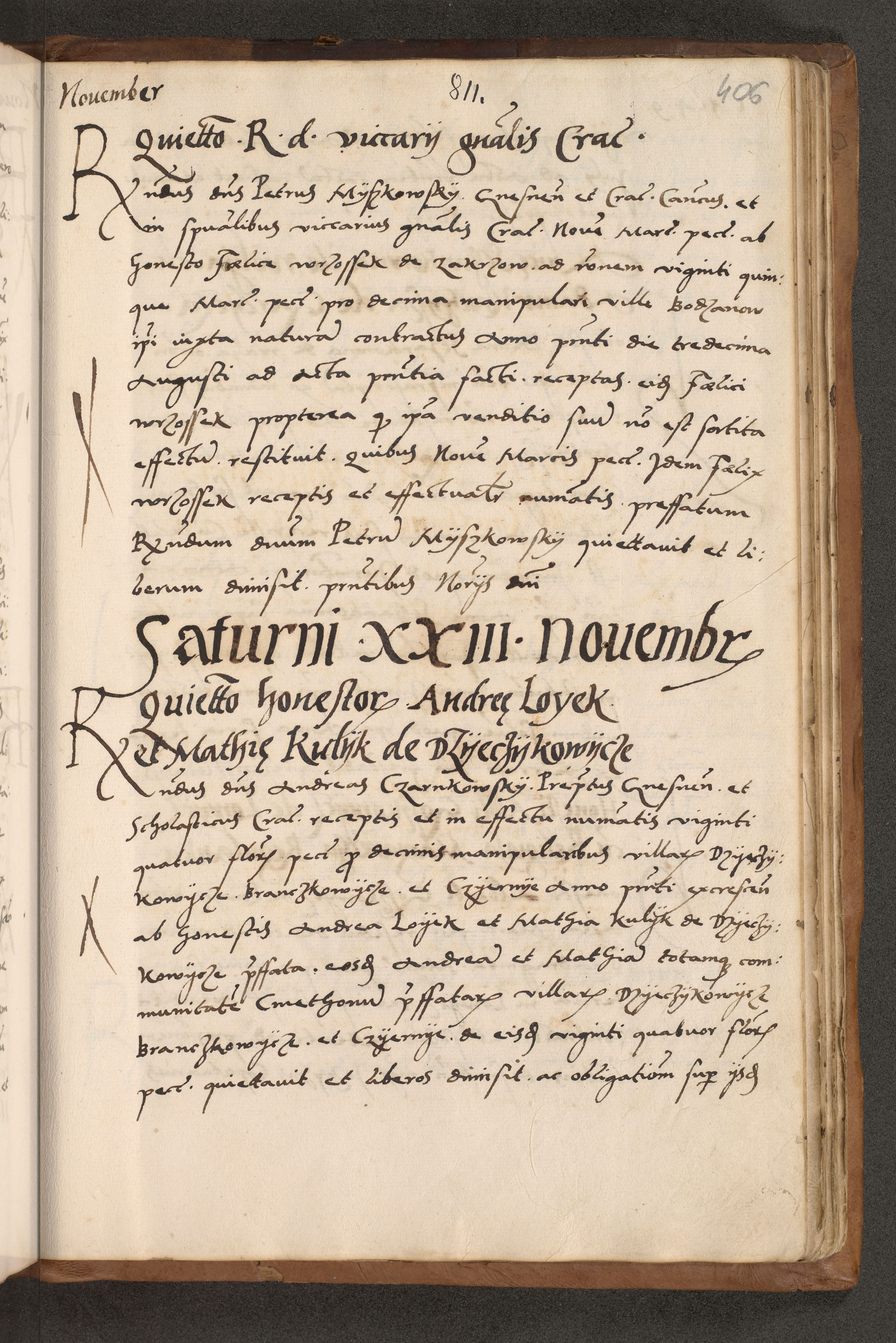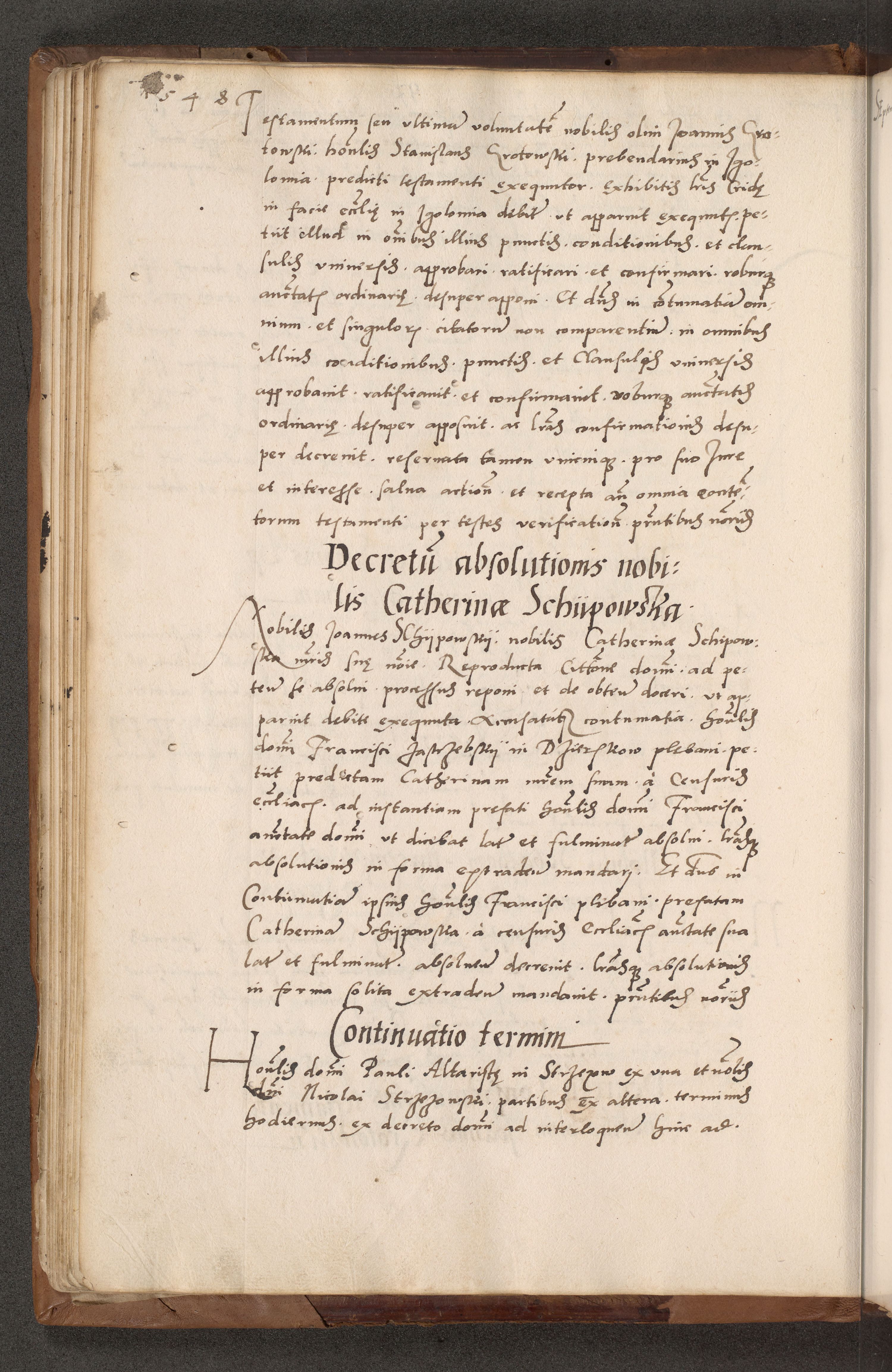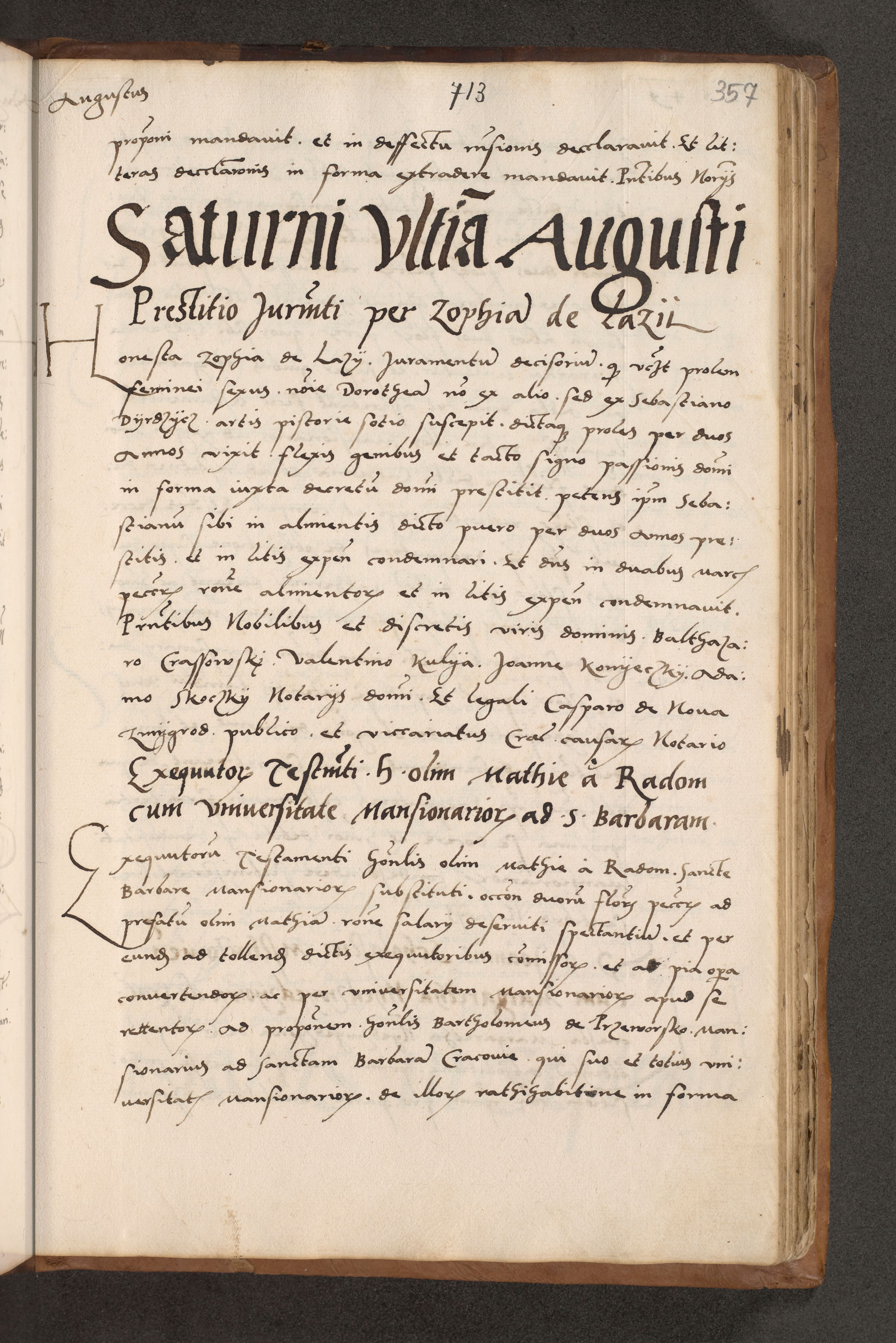 Acta actorum causarum, sentenciarum tam diffinitivarum quam interlocutoriarum et obligacionum coram reverendo domino Petro Mischkowski custode Kielcensi, canonico vicarioque in spiritualibus generali Cracoviensi ad annum Domini millesimum quingentesimum octavum, cuius indicio est sexta, pontificatus sanctissimi in Christo patris et domini nostri domini Pauli divina providencia pape tercii feliciter moderni, anno coronacionis quarto decimo continuantur