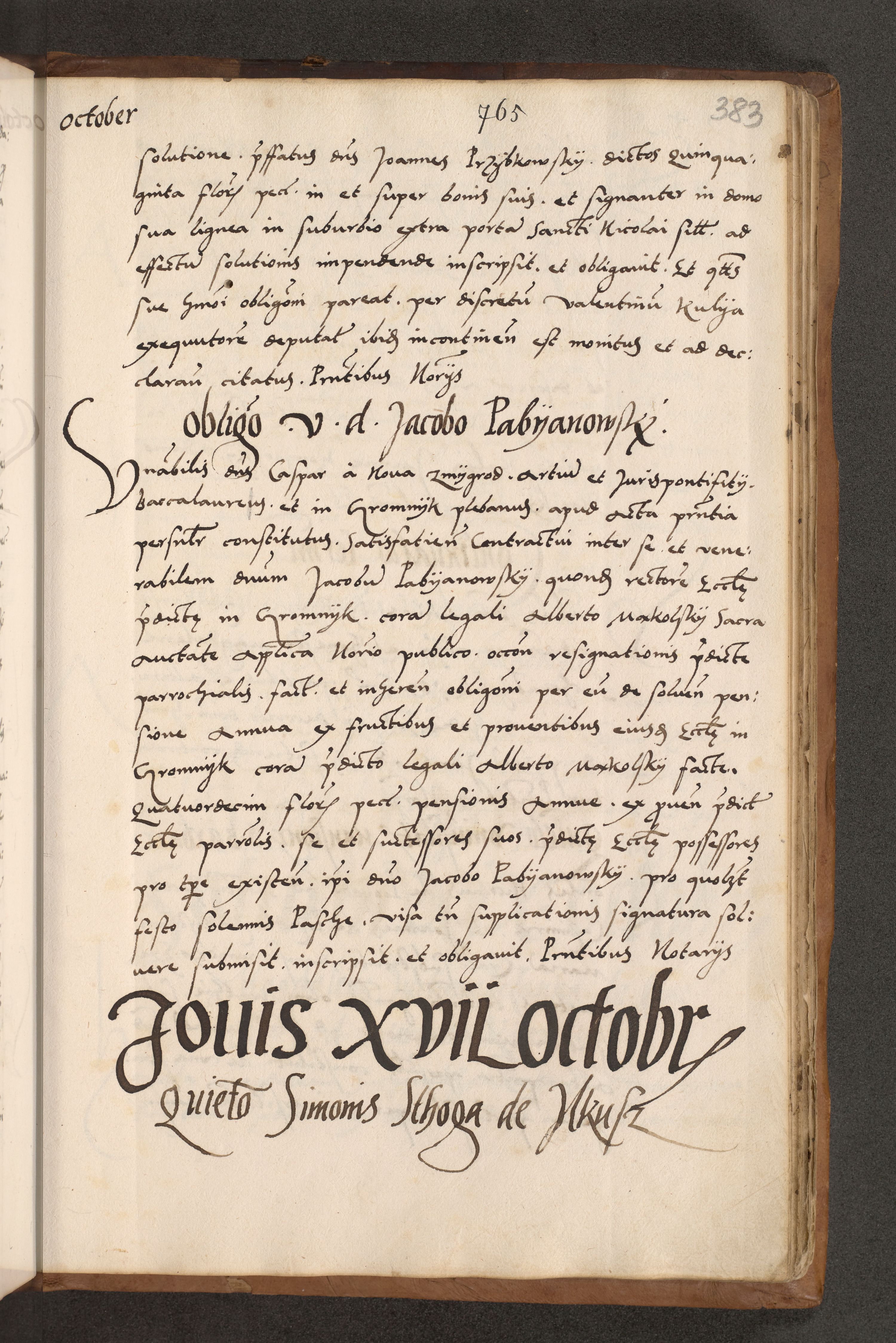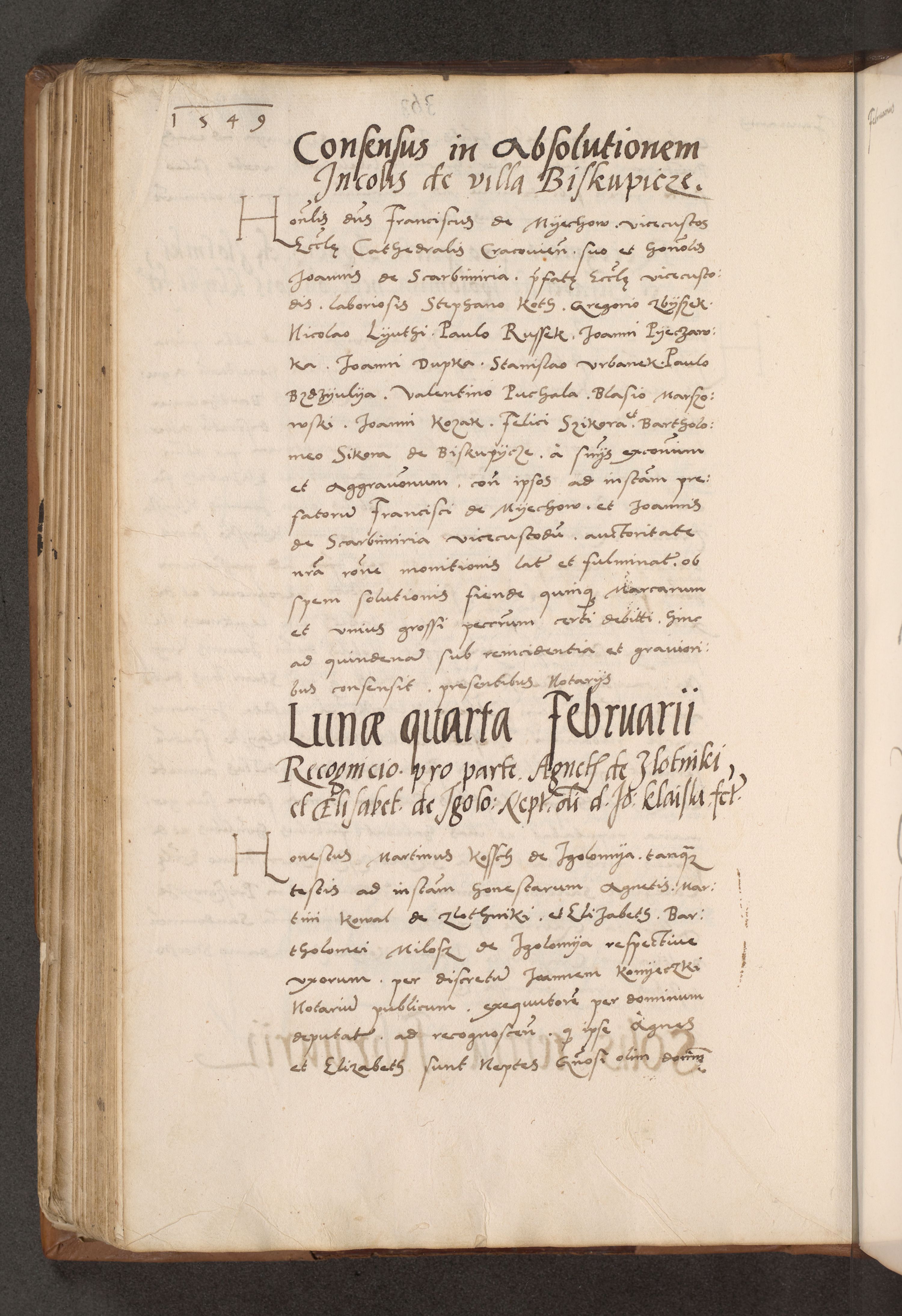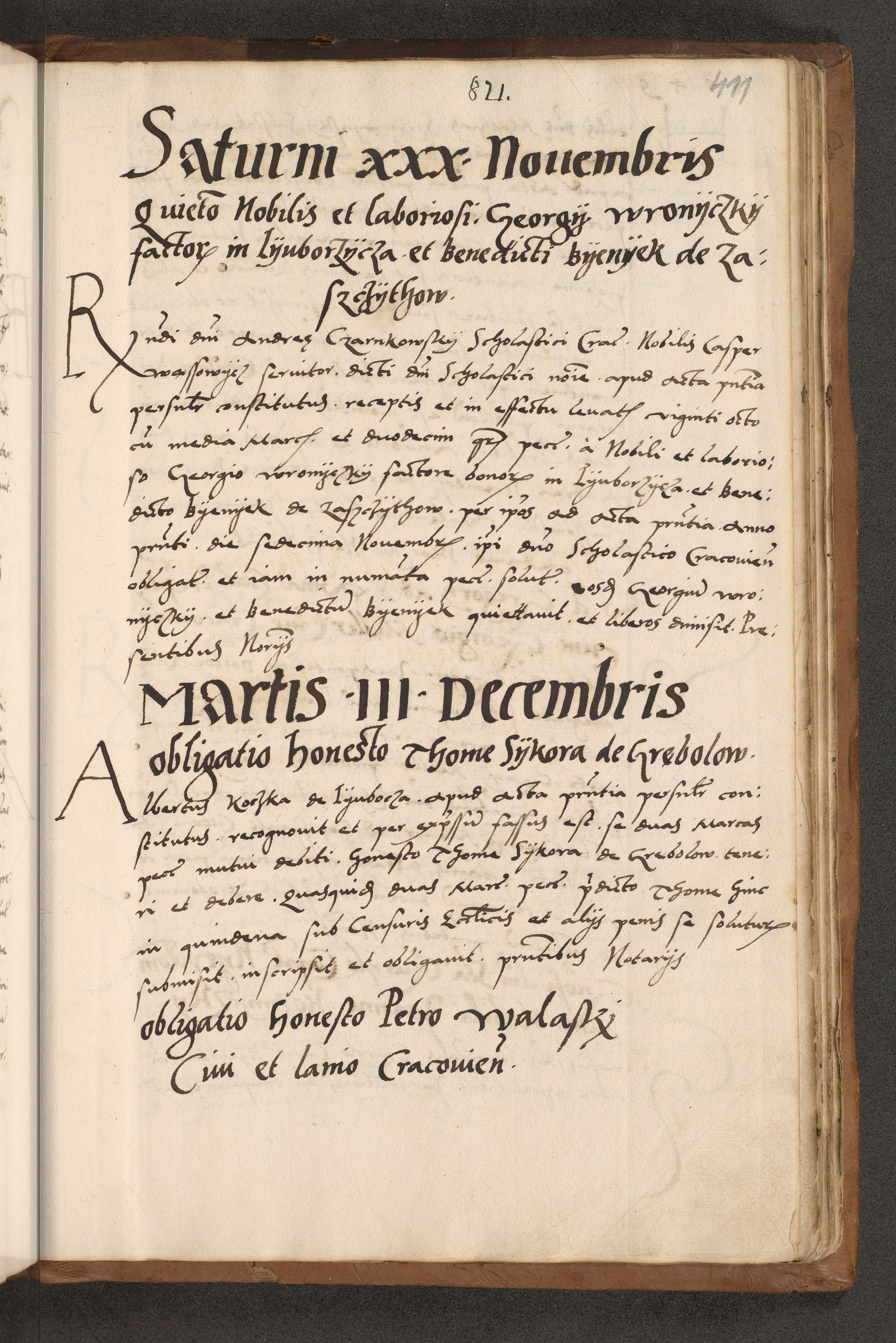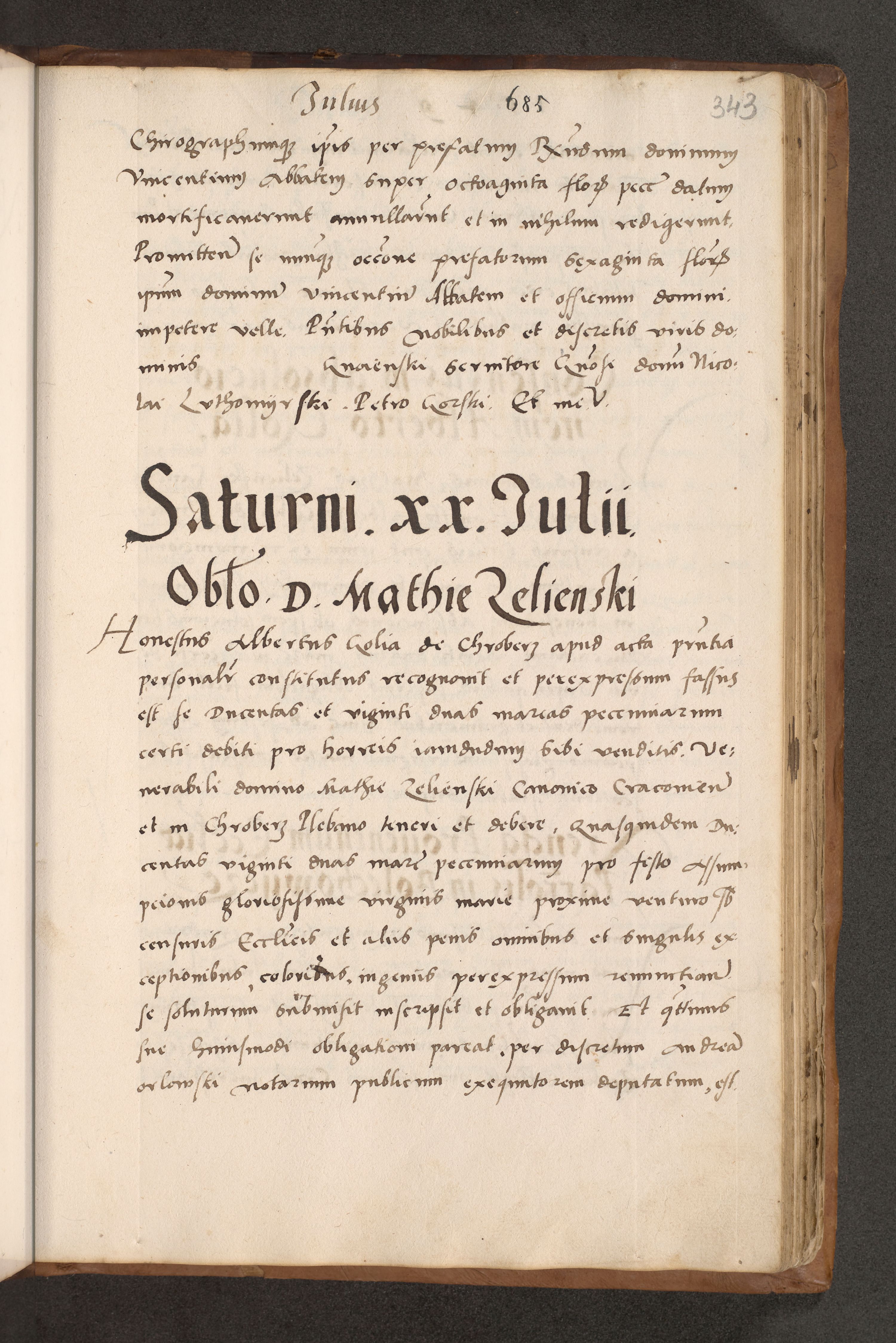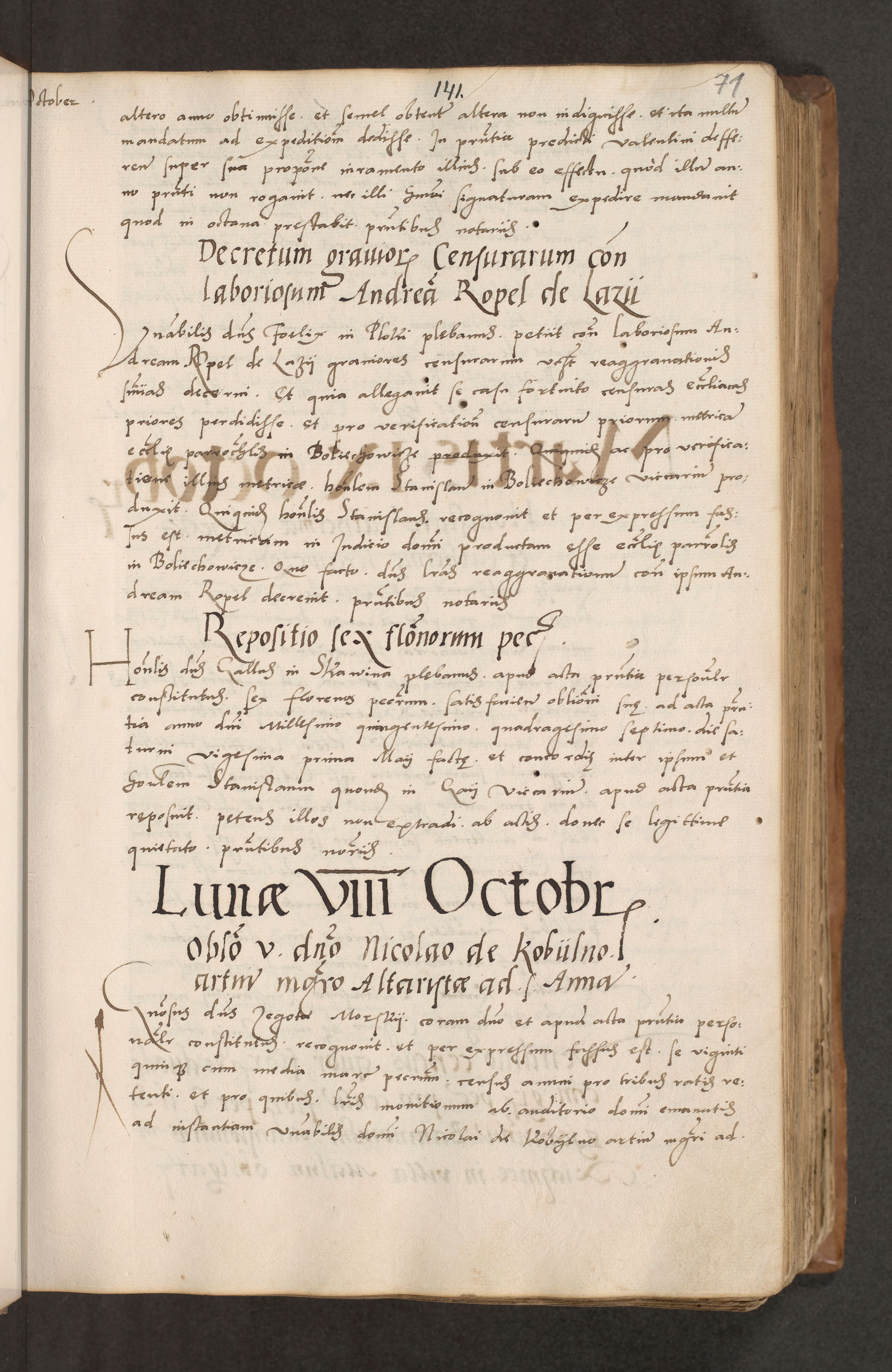 Acta actorum causarum, sentenciarum tam diffinitivarum quam interlocutoriarum et obligacionum coram reverendo domino Petro Mischkowski custode Kielcensi, canonico vicarioque in spiritualibus generali Cracoviensi ad annum Domini millesimum quingentesimum octavum, cuius indicio est sexta, pontificatus sanctissimi in Christo patris et domini nostri domini Pauli divina providencia pape tercii feliciter moderni, anno coronacionis quarto decimo continuantur