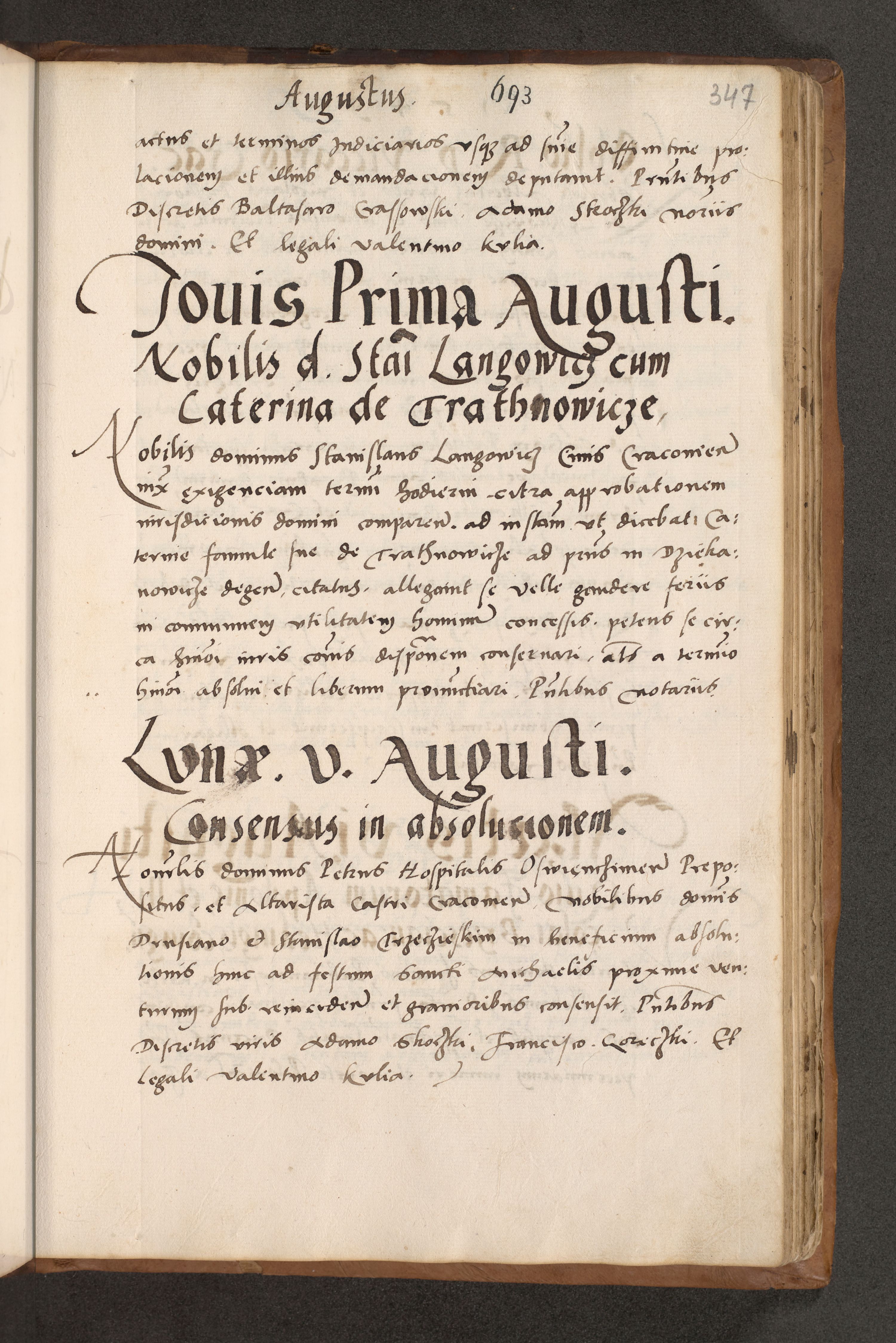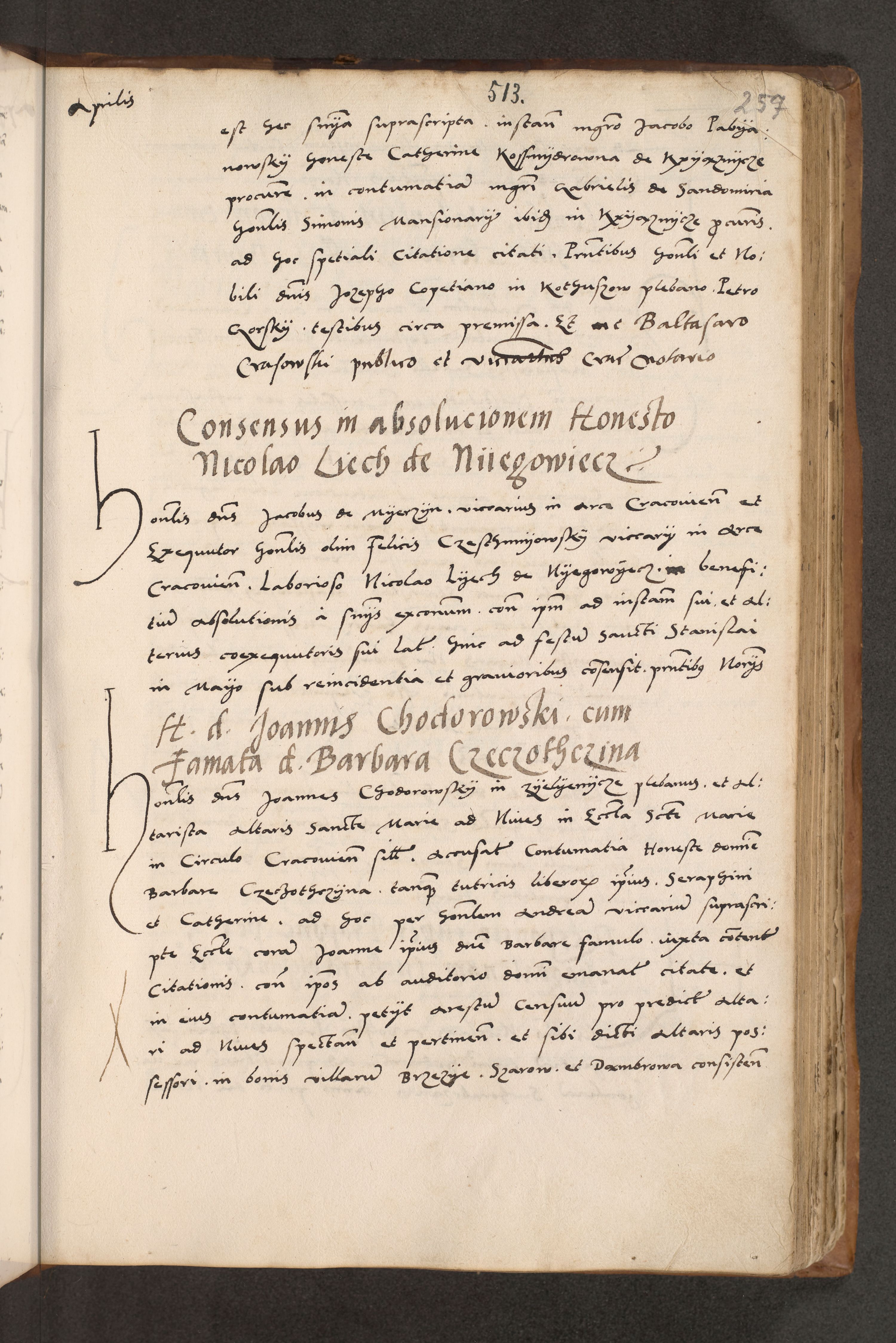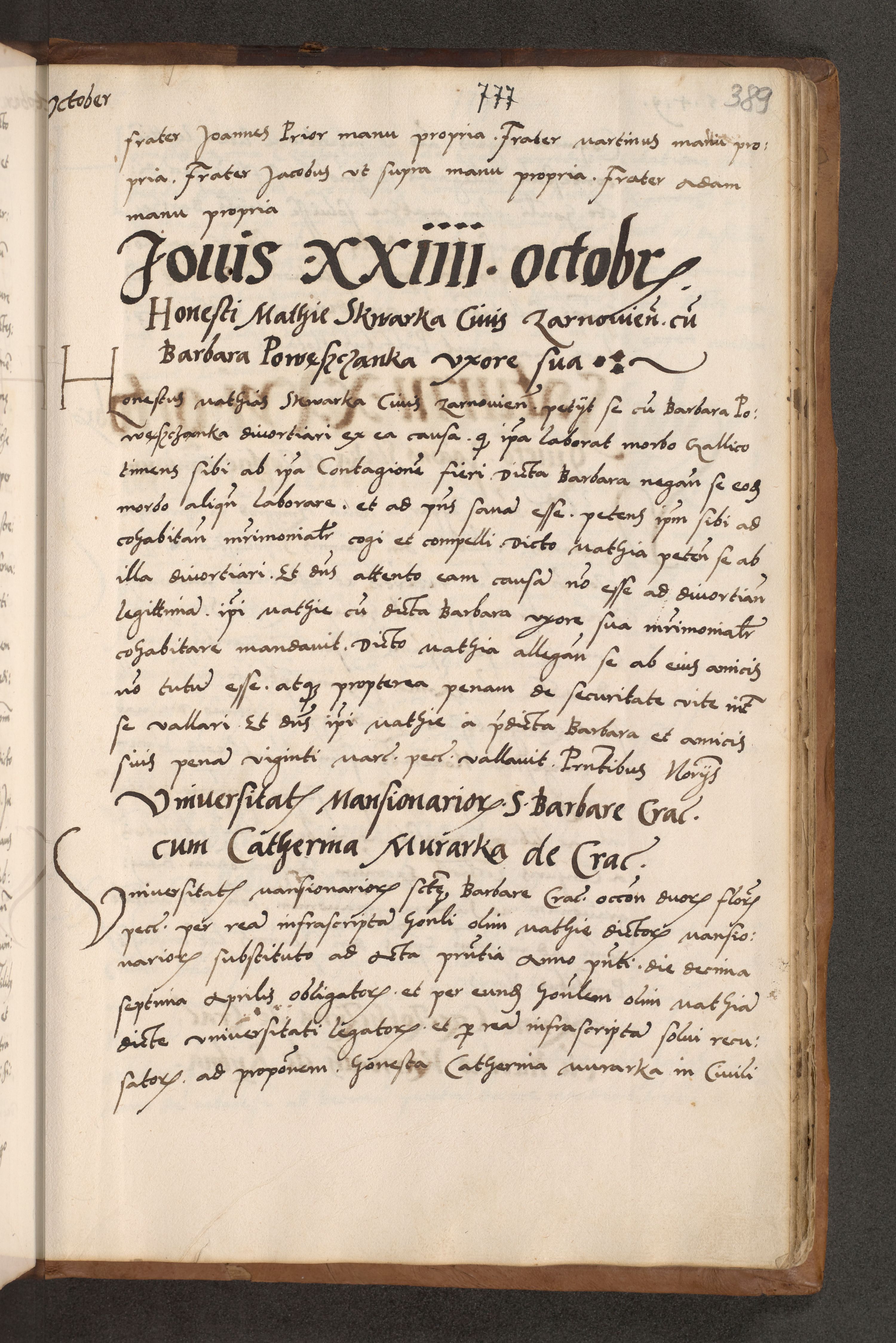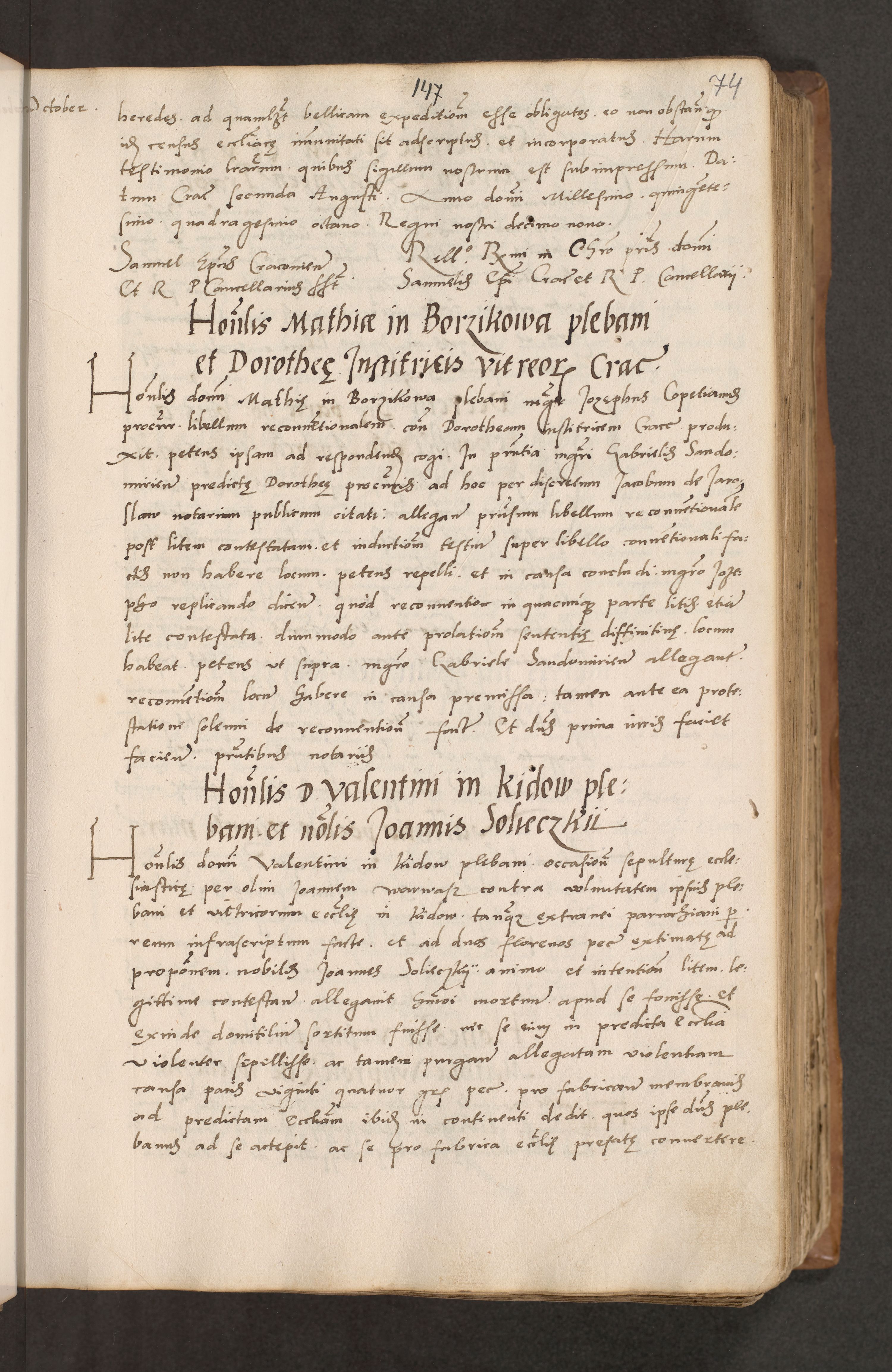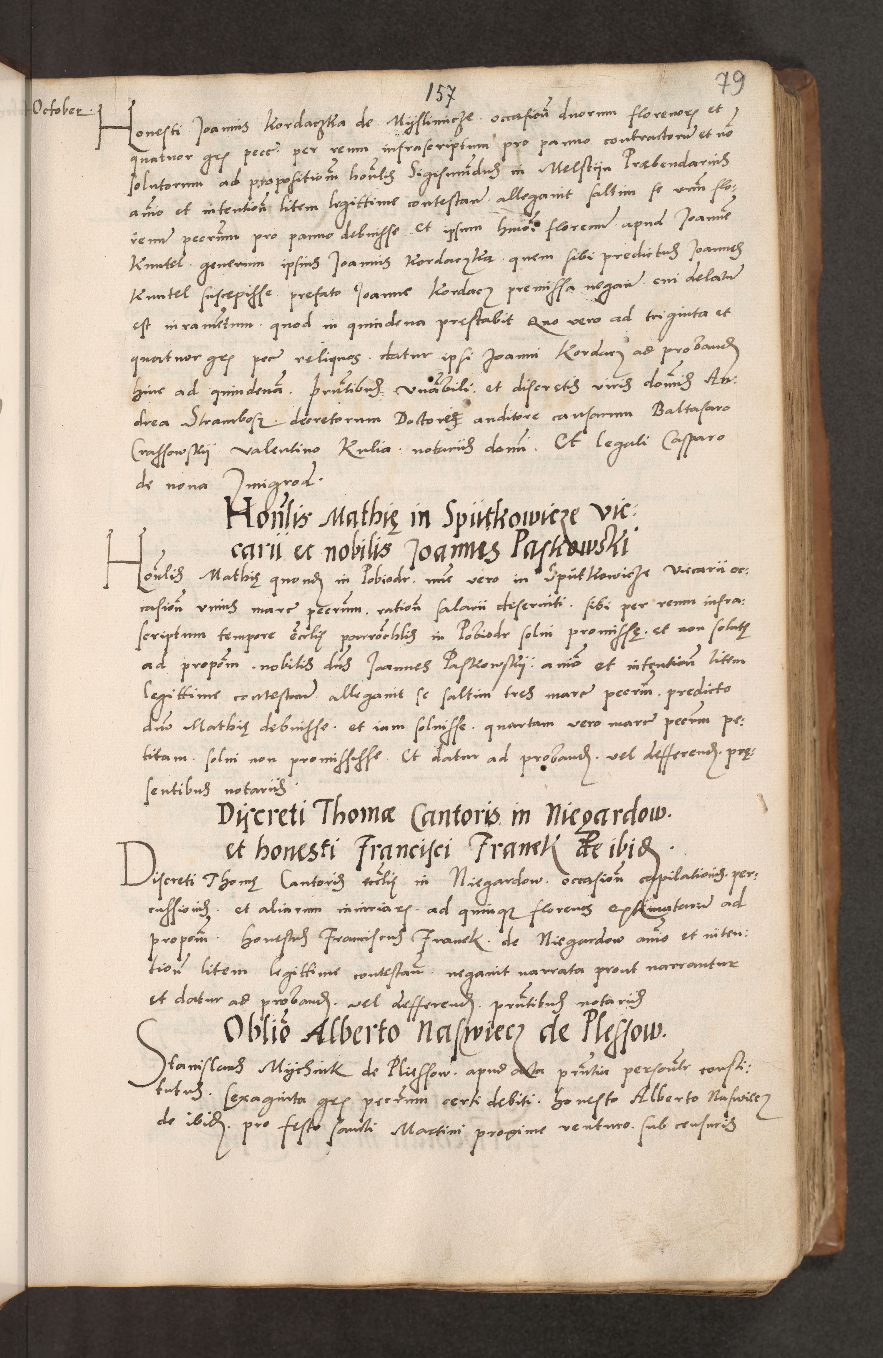 Acta actorum causarum, sentenciarum tam diffinitivarum quam interlocutoriarum et obligacionum coram reverendo domino Petro Mischkowski custode Kielcensi, canonico vicarioque in spiritualibus generali Cracoviensi ad annum Domini millesimum quingentesimum octavum, cuius indicio est sexta, pontificatus sanctissimi in Christo patris et domini nostri domini Pauli divina providencia pape tercii feliciter moderni, anno coronacionis quarto decimo continuantur