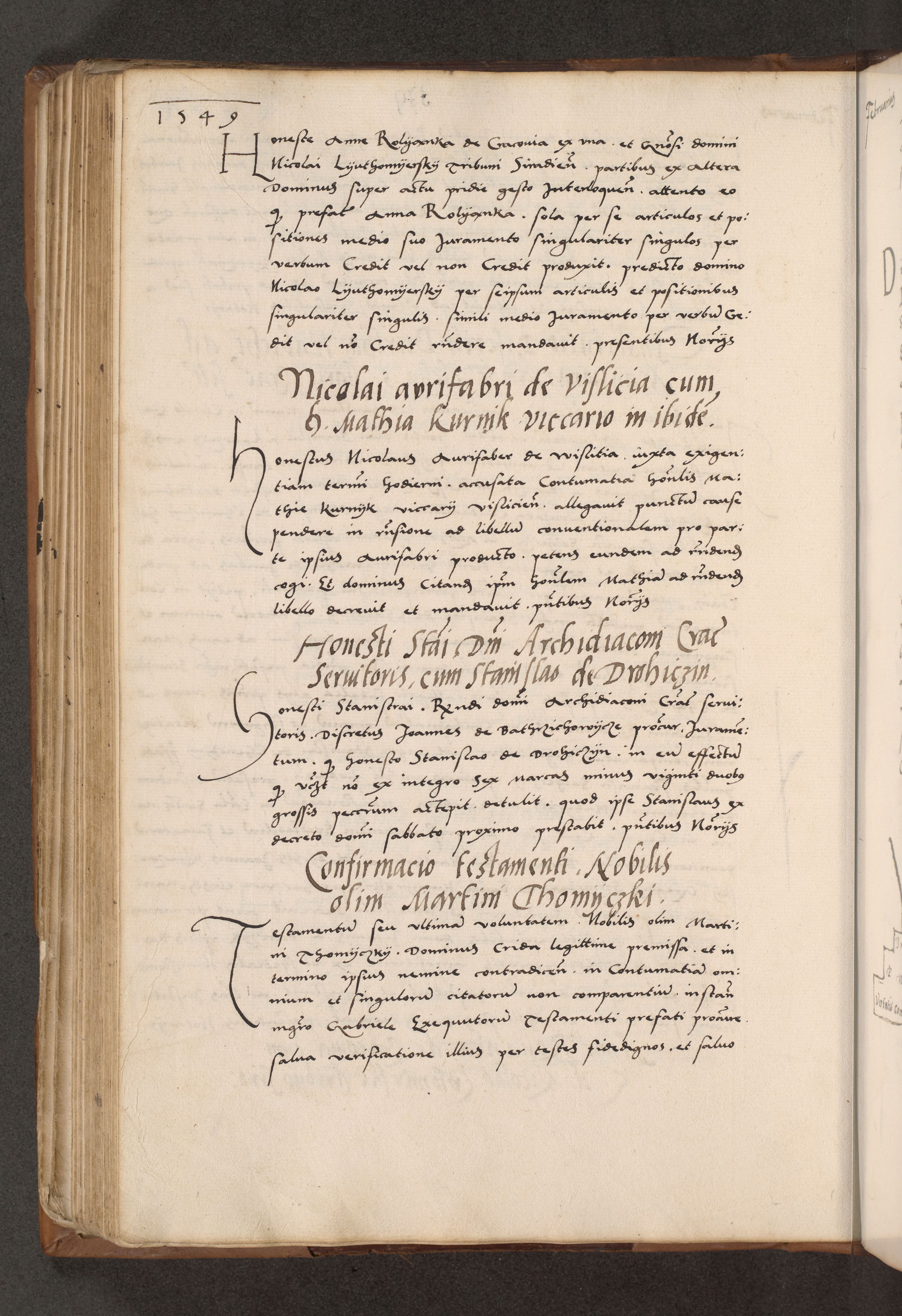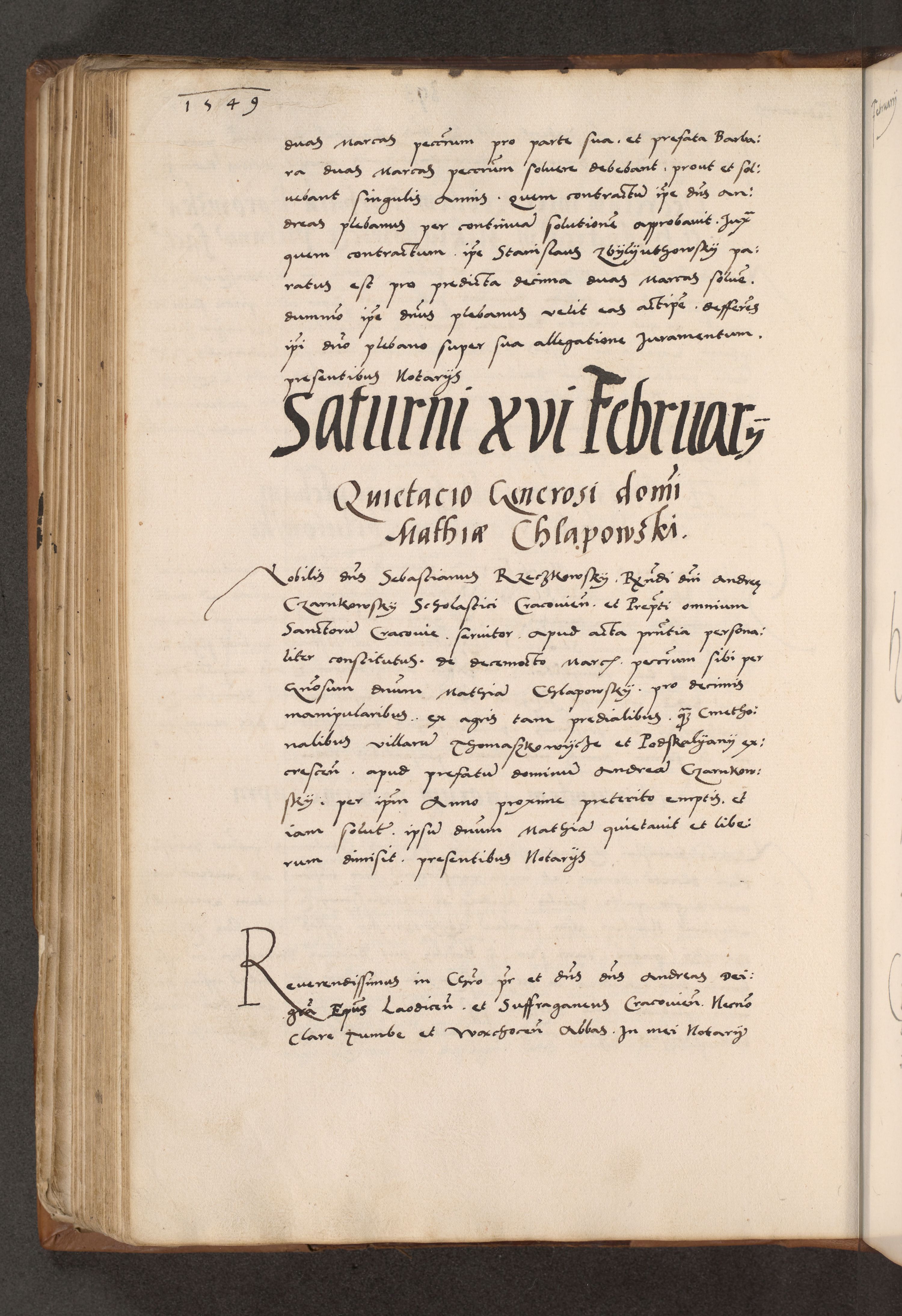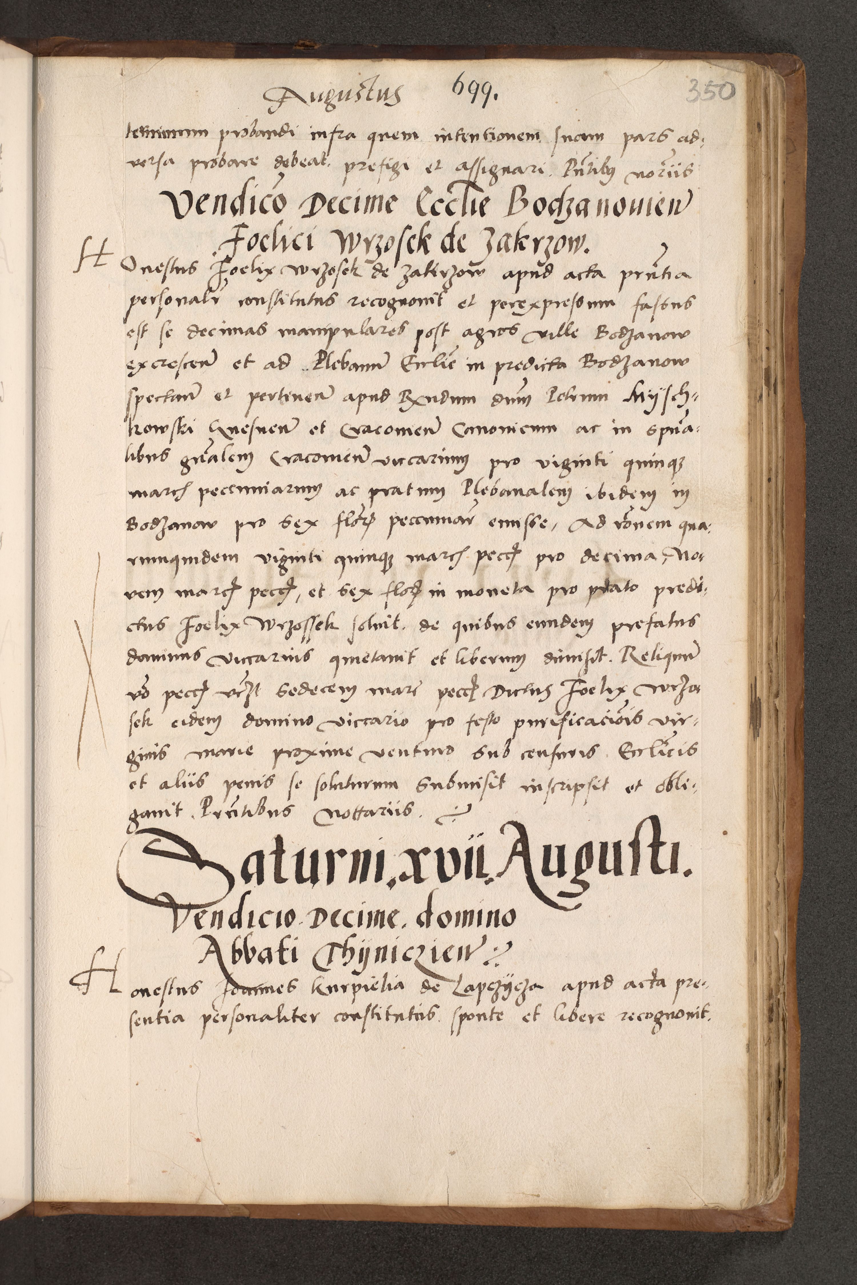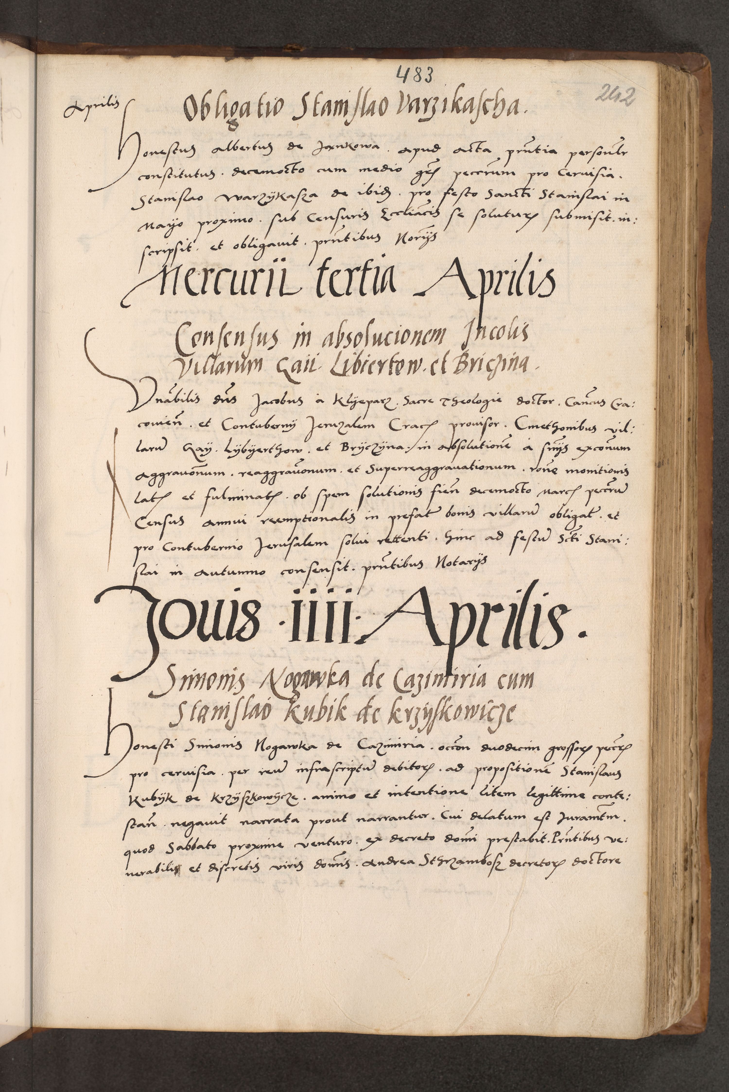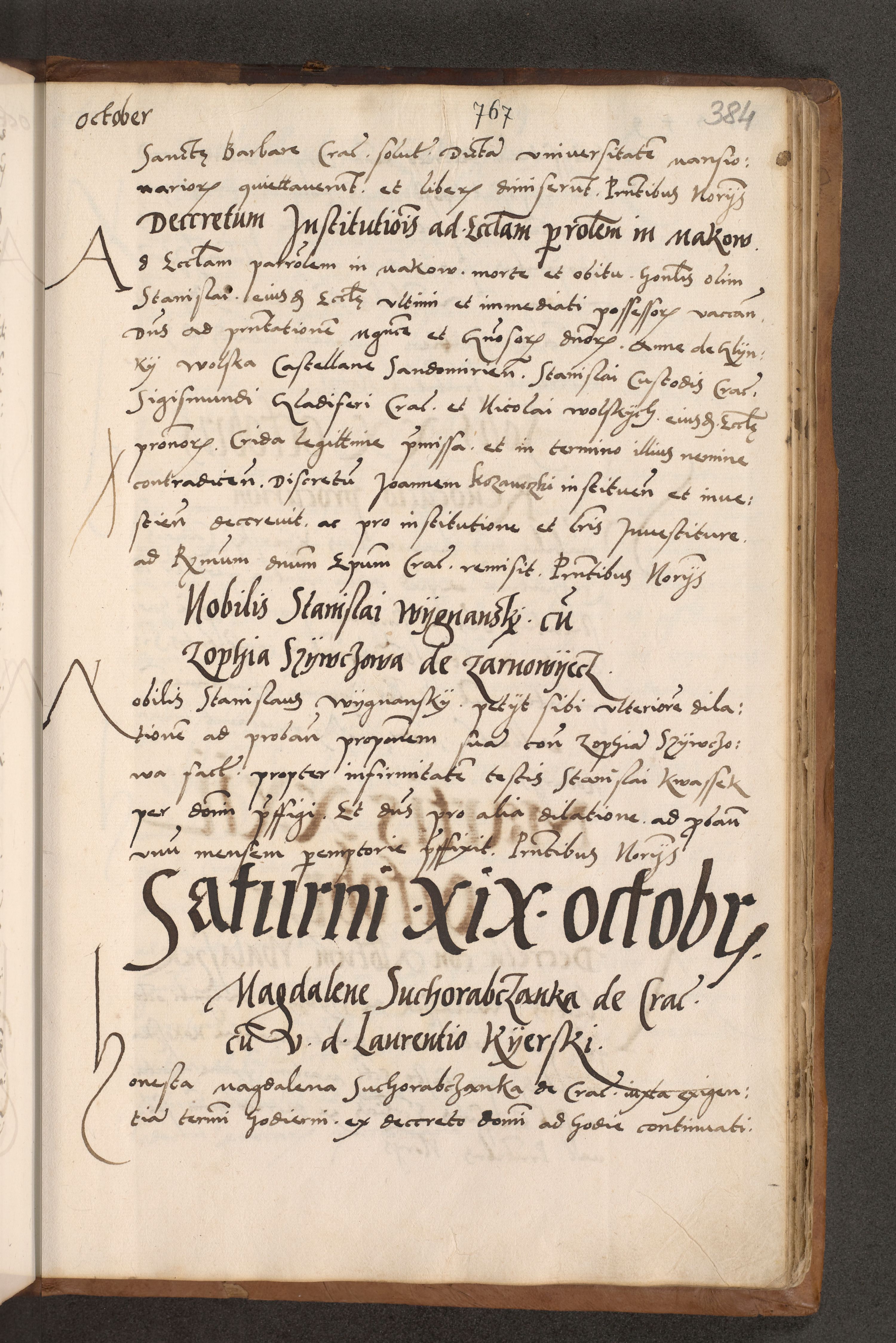 Acta actorum causarum, sentenciarum tam diffinitivarum quam interlocutoriarum et obligacionum coram reverendo domino Petro Mischkowski custode Kielcensi, canonico vicarioque in spiritualibus generali Cracoviensi ad annum Domini millesimum quingentesimum octavum, cuius indicio est sexta, pontificatus sanctissimi in Christo patris et domini nostri domini Pauli divina providencia pape tercii feliciter moderni, anno coronacionis quarto decimo continuantur