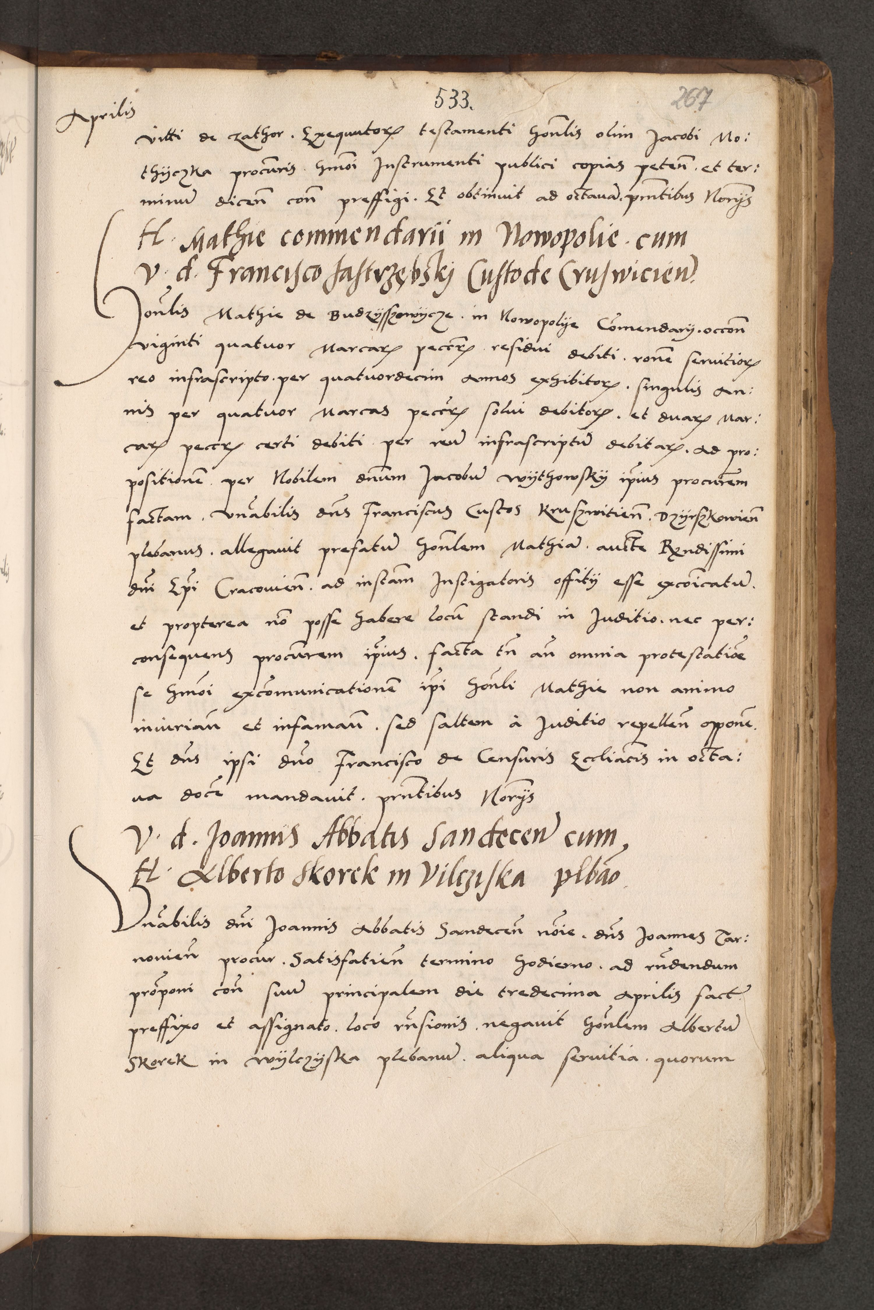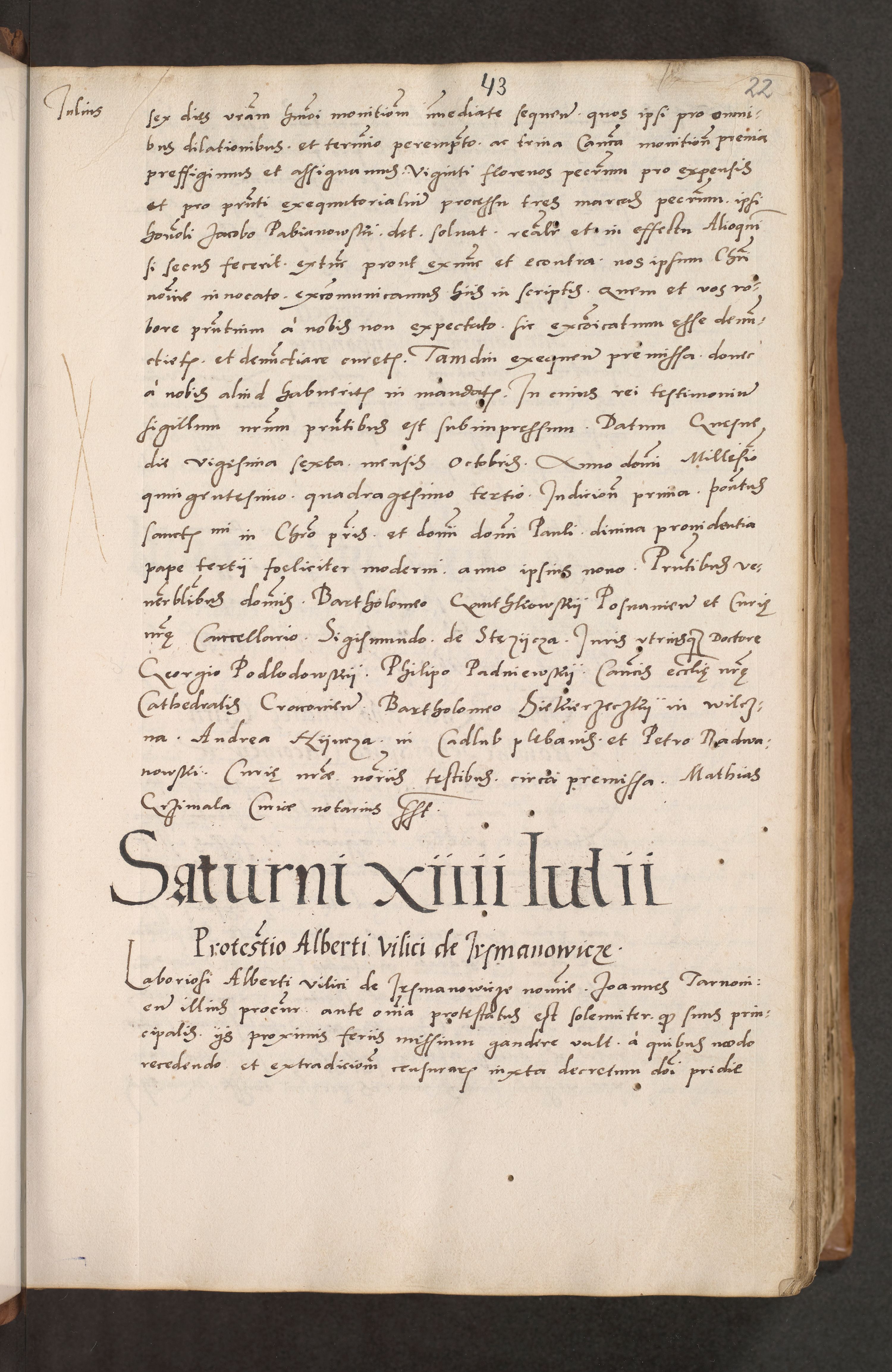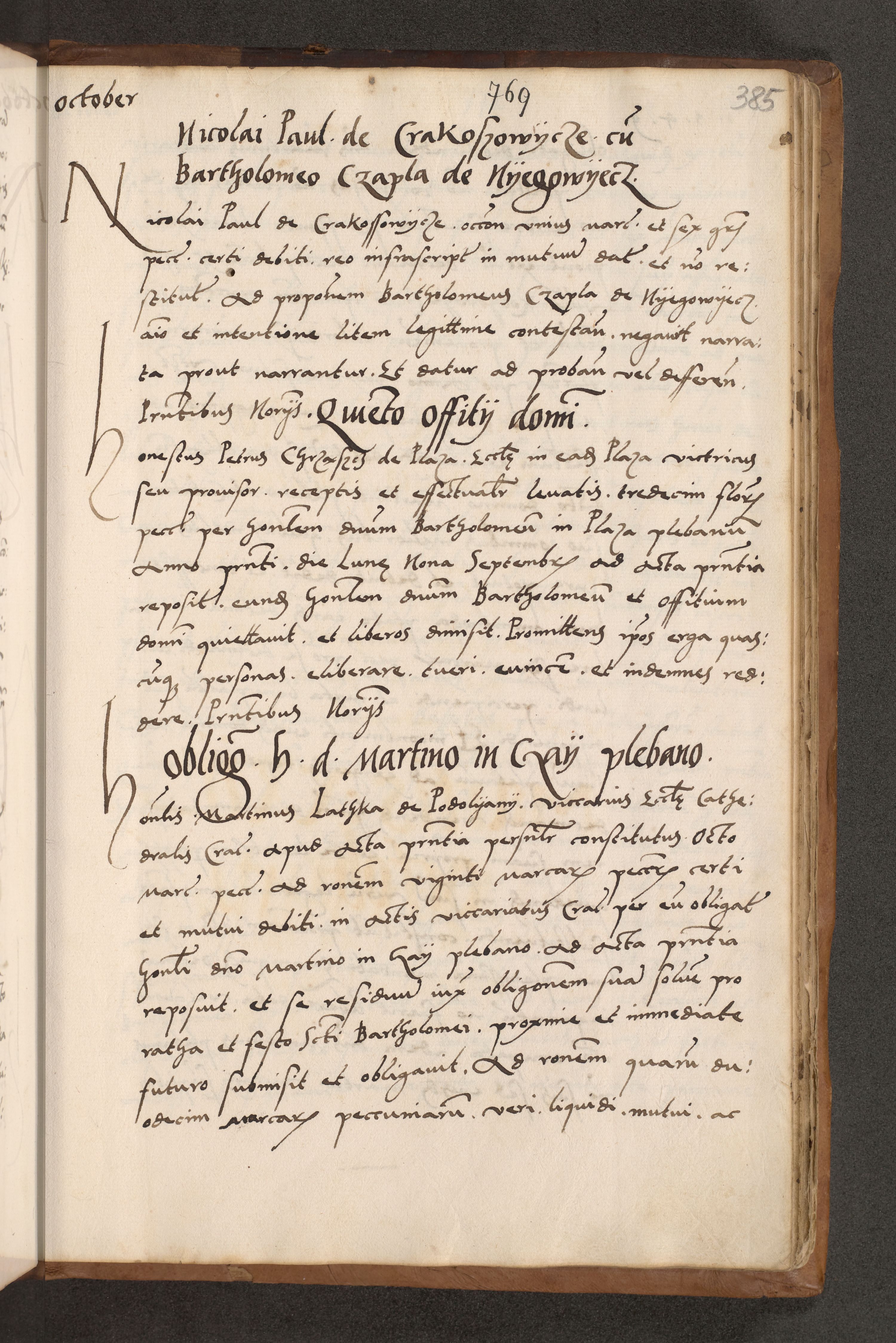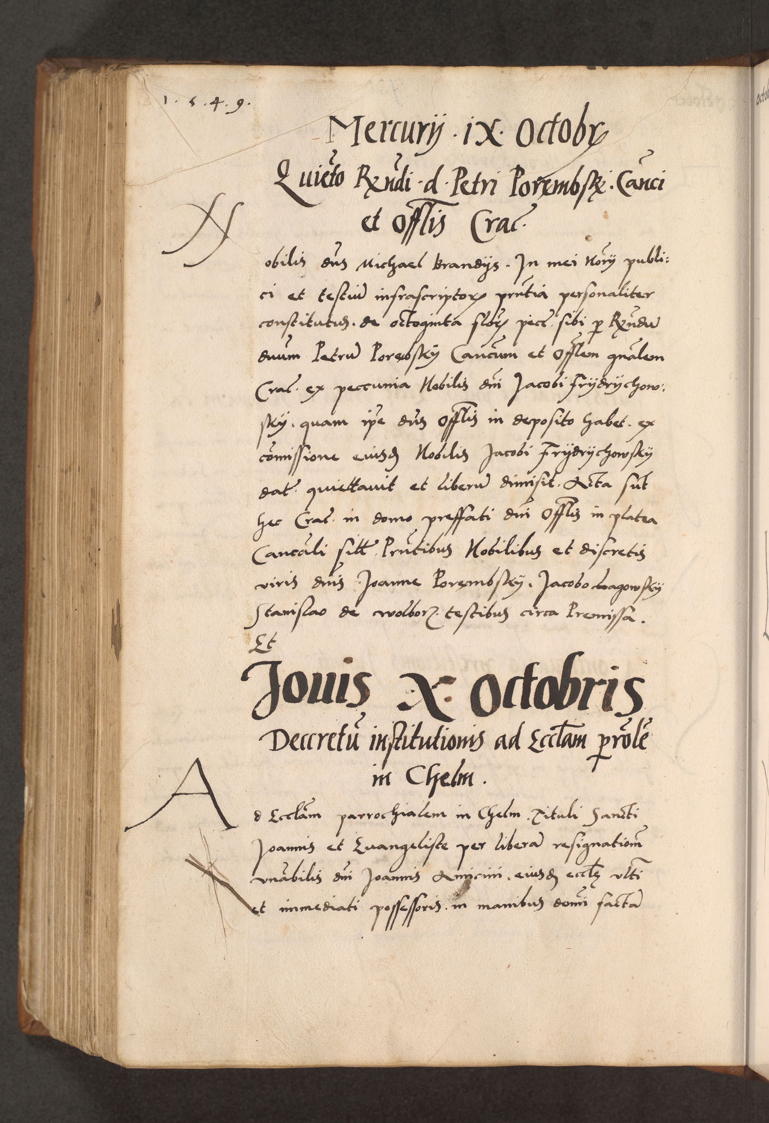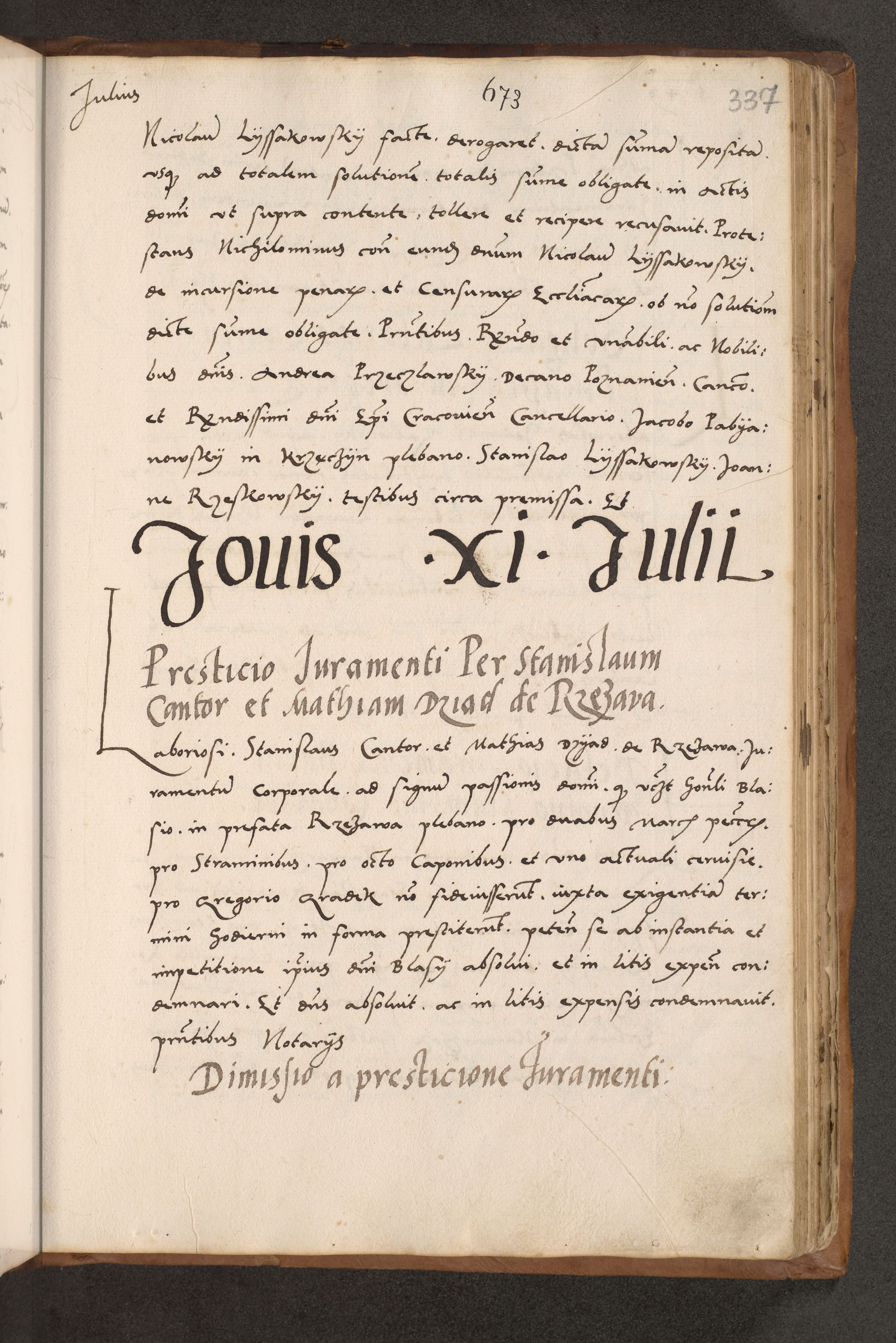 Acta actorum causarum, sentenciarum tam diffinitivarum quam interlocutoriarum et obligacionum coram reverendo domino Petro Mischkowski custode Kielcensi, canonico vicarioque in spiritualibus generali Cracoviensi ad annum Domini millesimum quingentesimum octavum, cuius indicio est sexta, pontificatus sanctissimi in Christo patris et domini nostri domini Pauli divina providencia pape tercii feliciter moderni, anno coronacionis quarto decimo continuantur