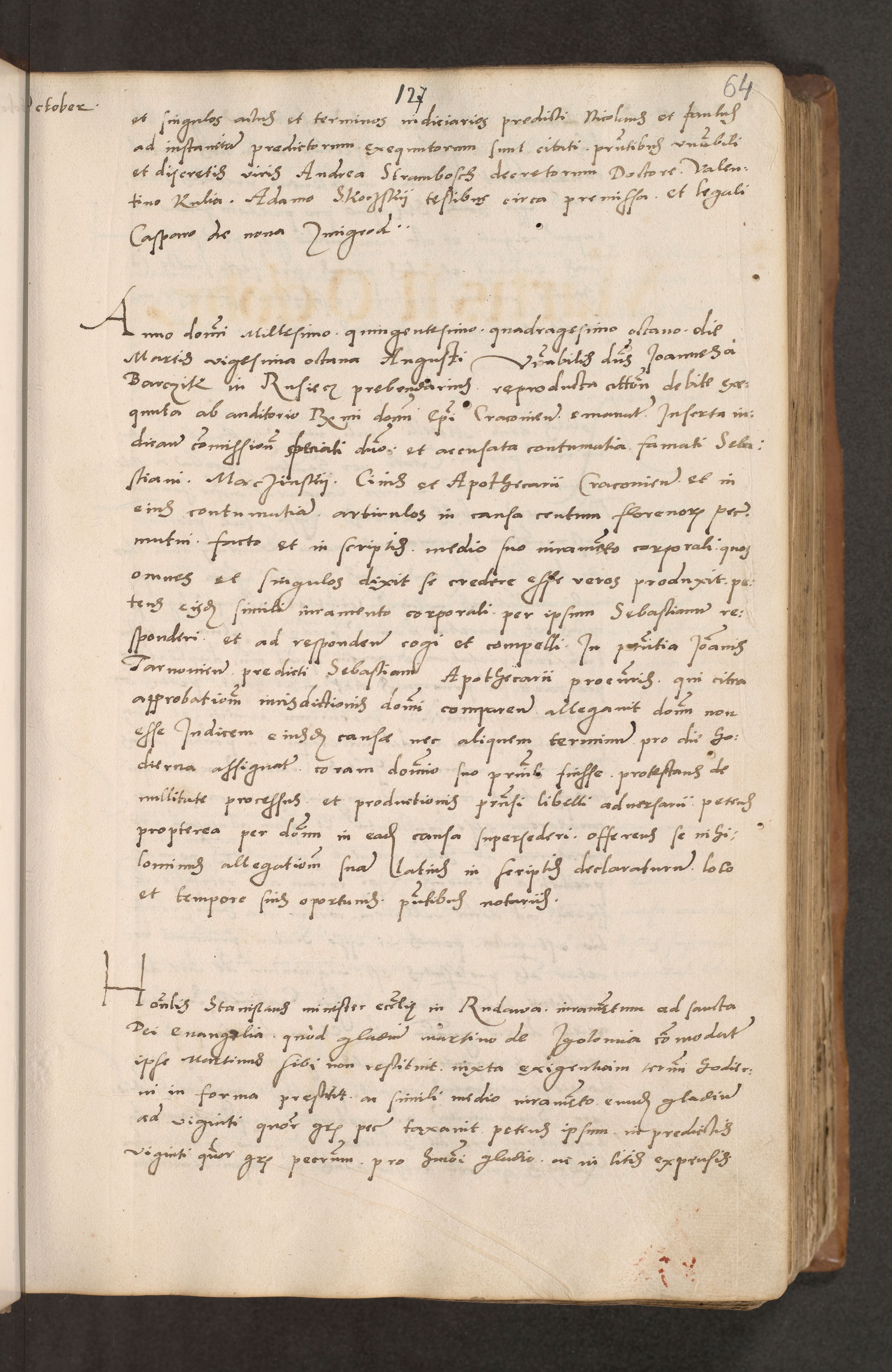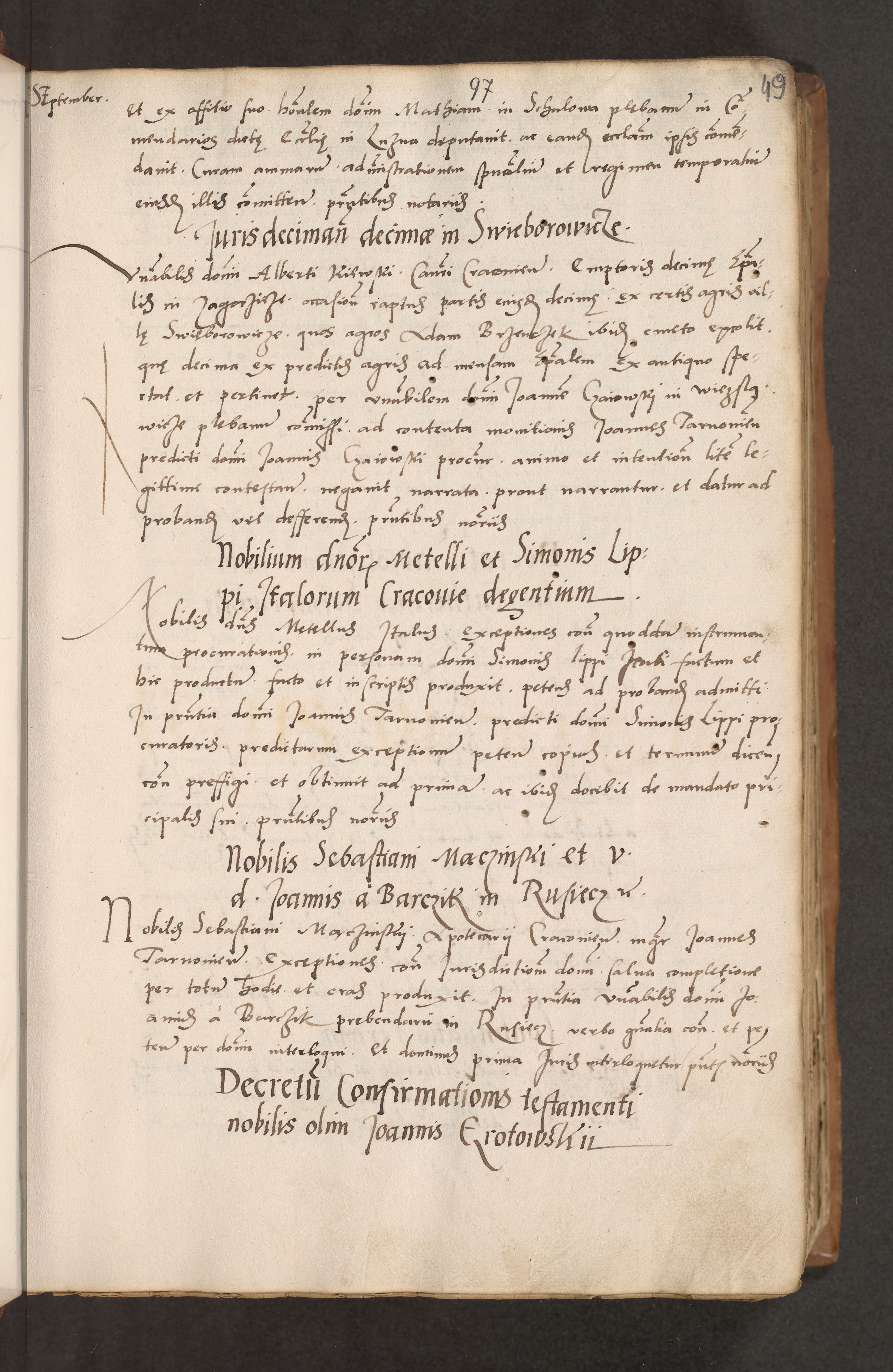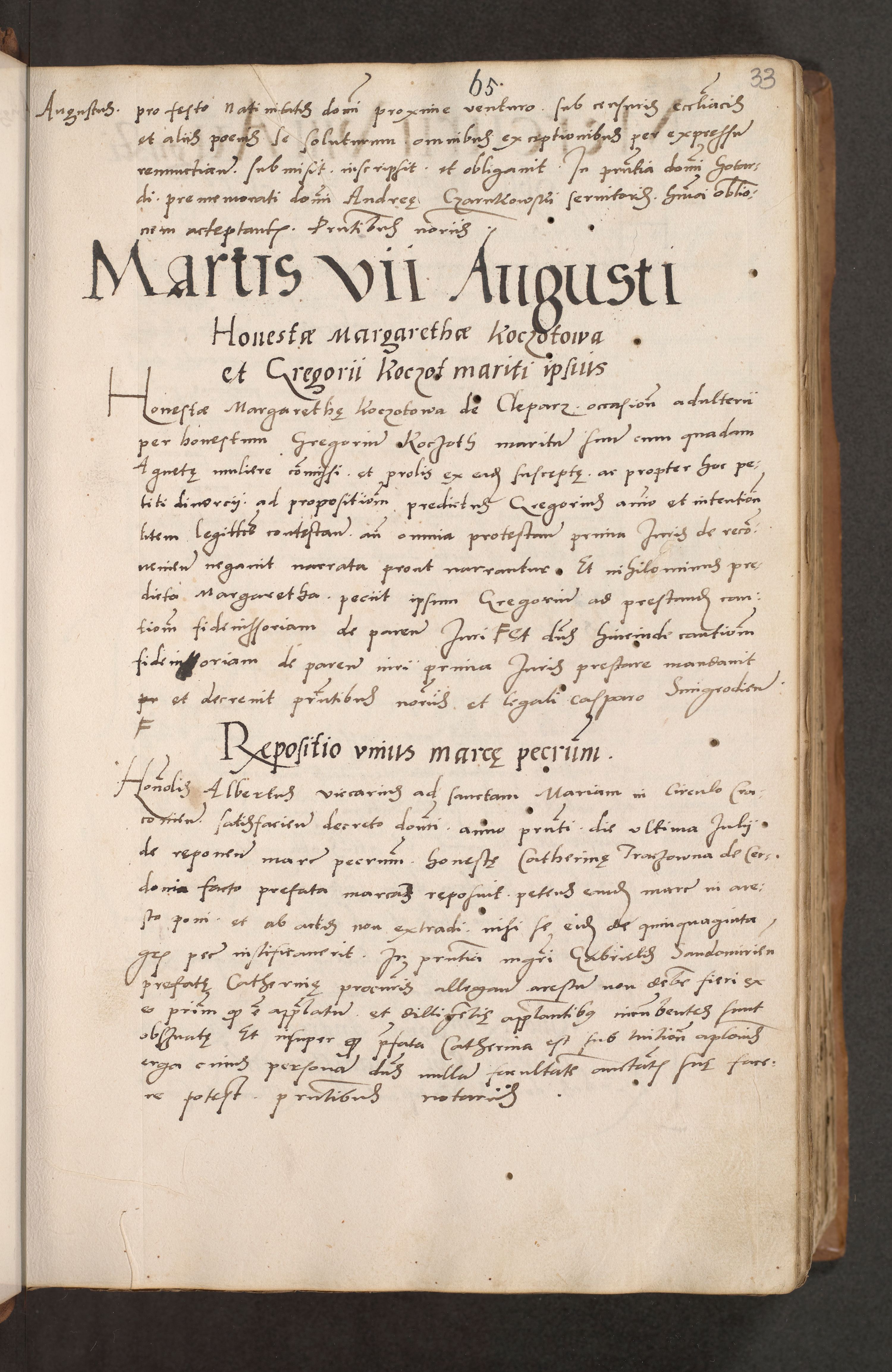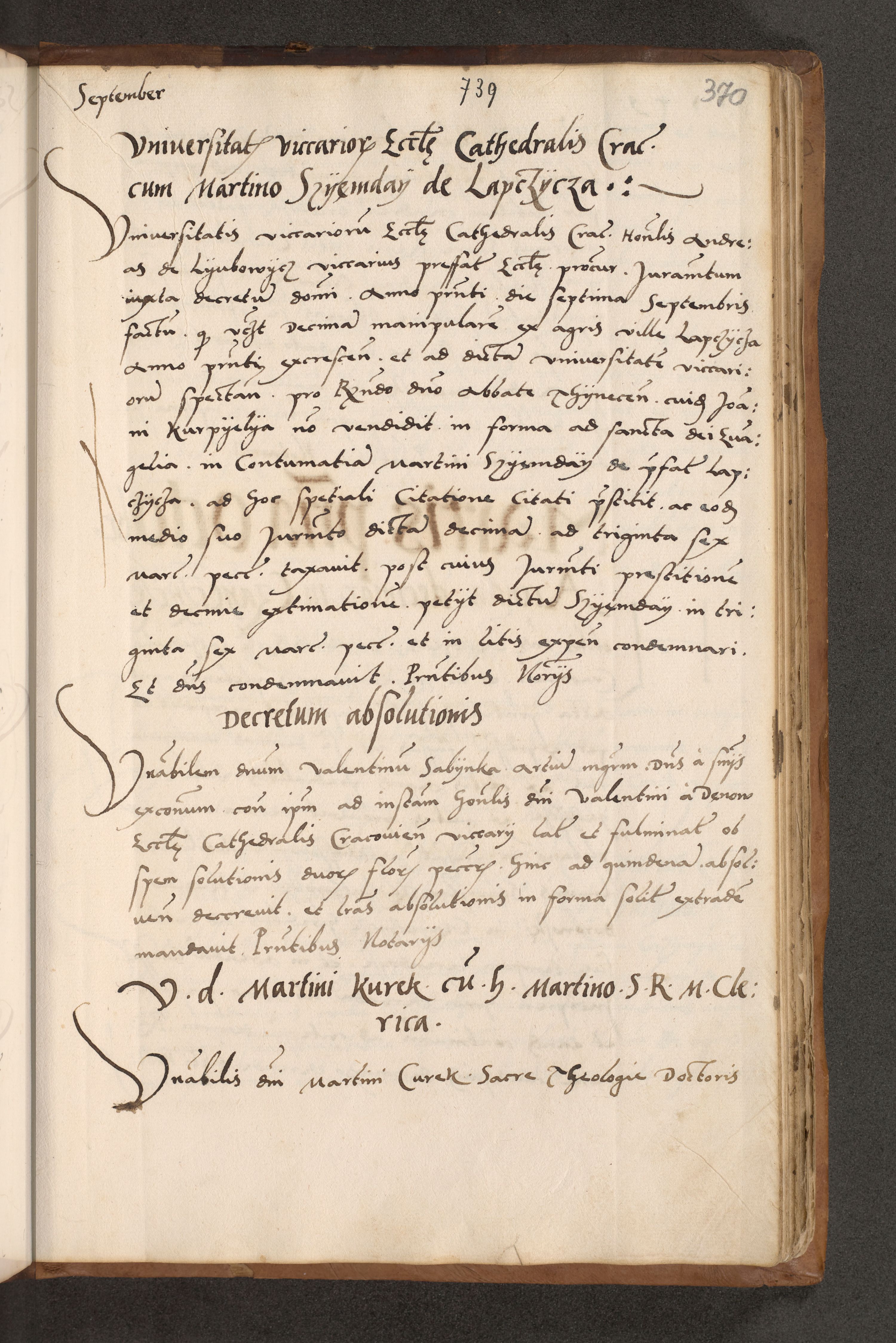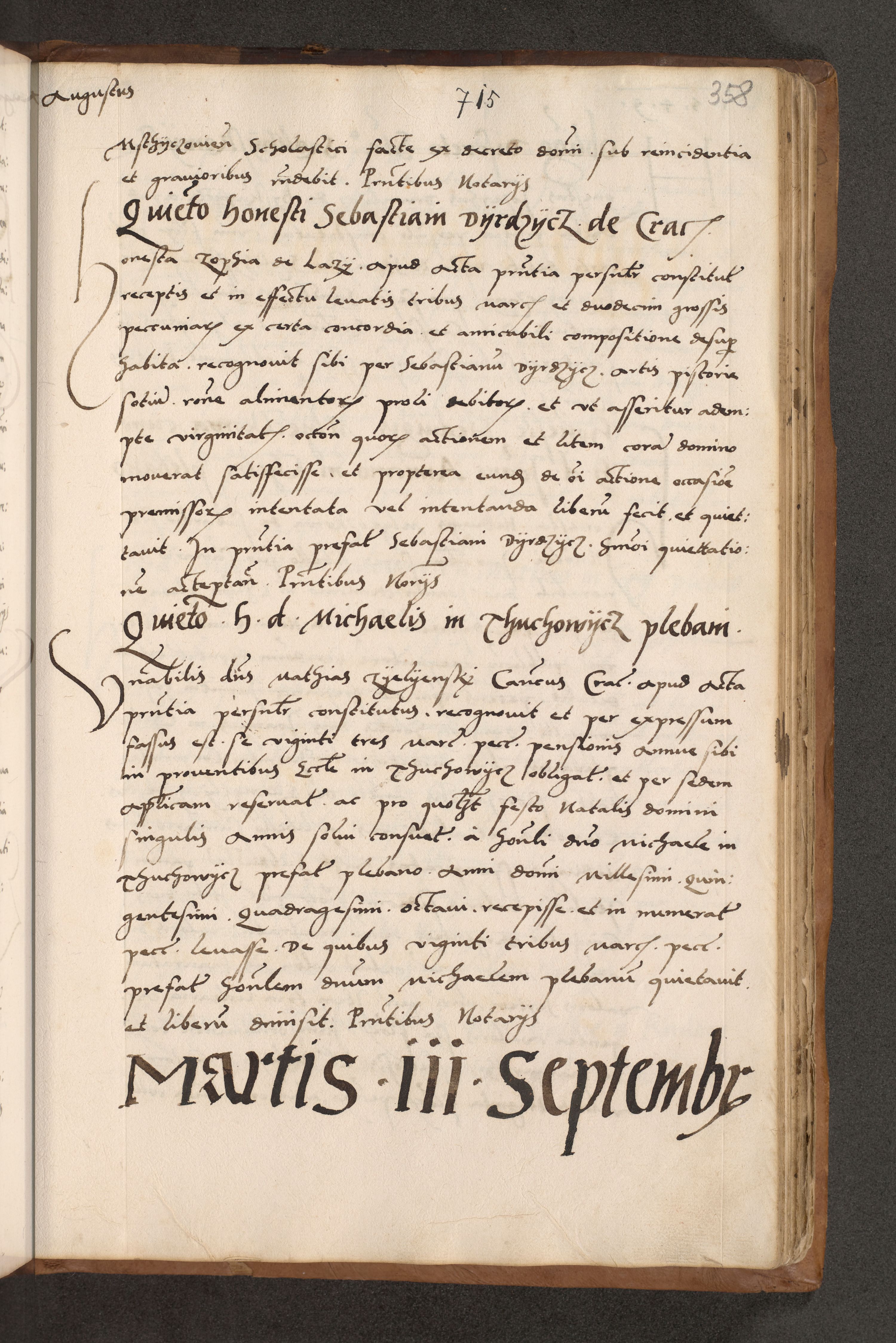 Acta actorum causarum, sentenciarum tam diffinitivarum quam interlocutoriarum et obligacionum coram reverendo domino Petro Mischkowski custode Kielcensi, canonico vicarioque in spiritualibus generali Cracoviensi ad annum Domini millesimum quingentesimum octavum, cuius indicio est sexta, pontificatus sanctissimi in Christo patris et domini nostri domini Pauli divina providencia pape tercii feliciter moderni, anno coronacionis quarto decimo continuantur