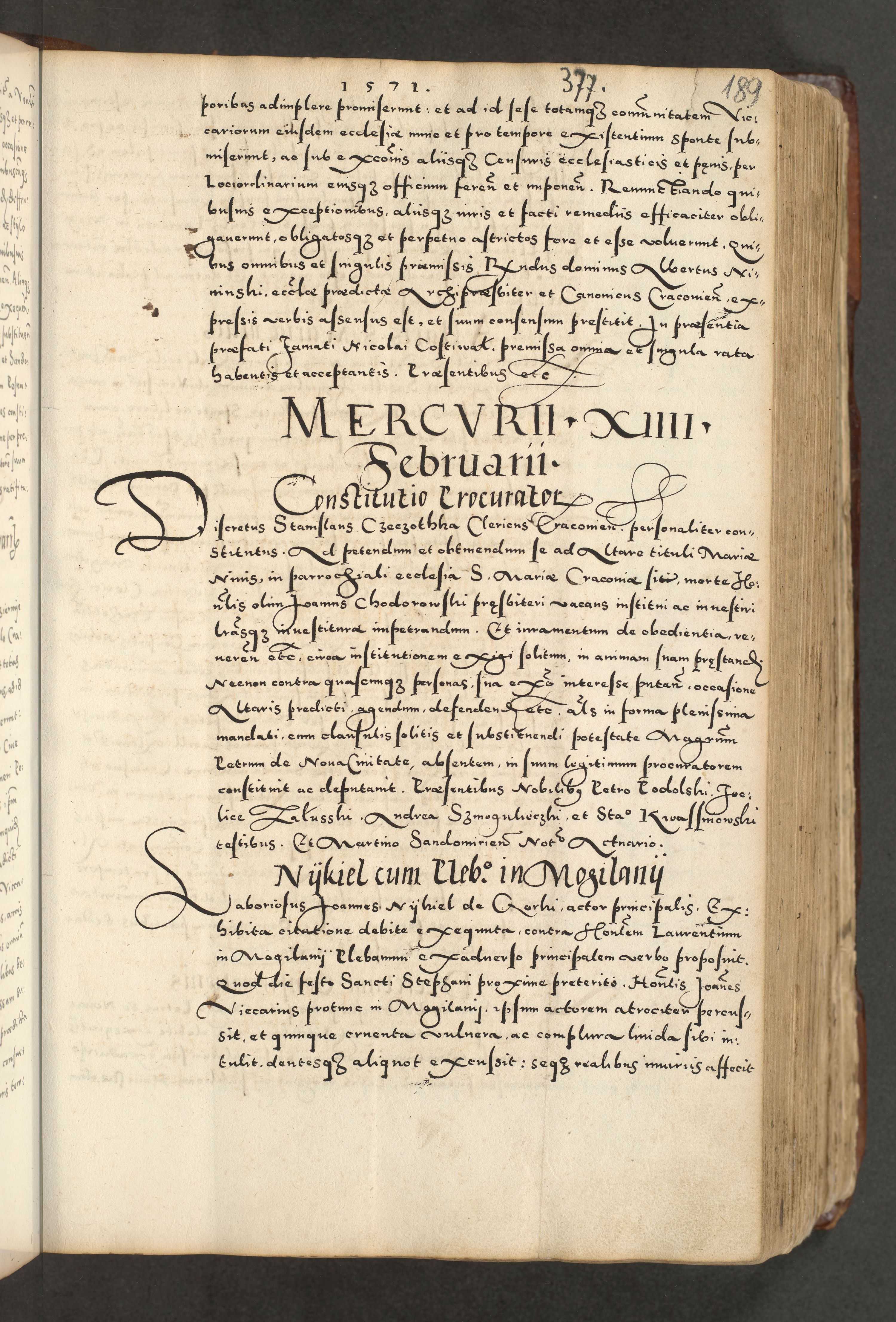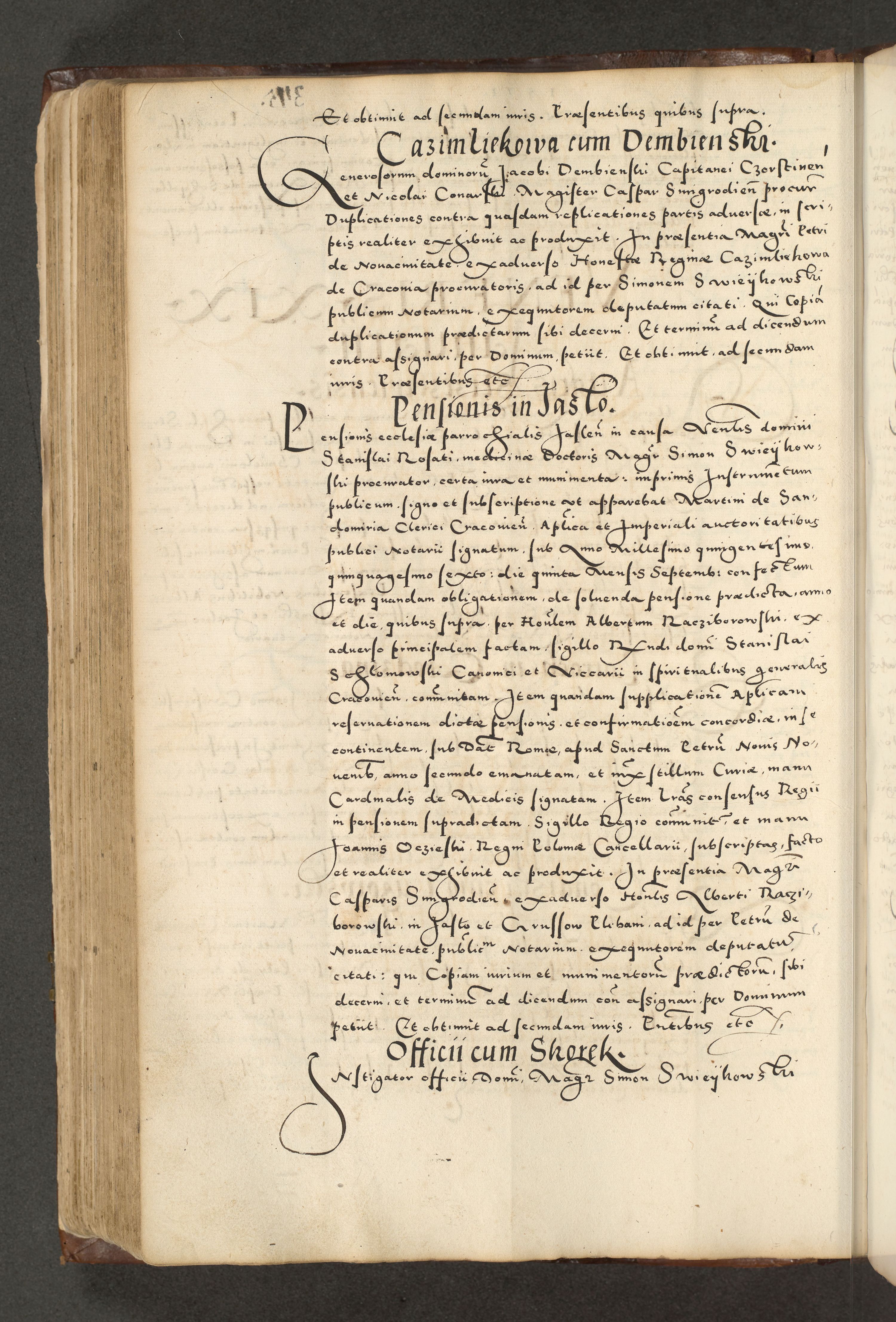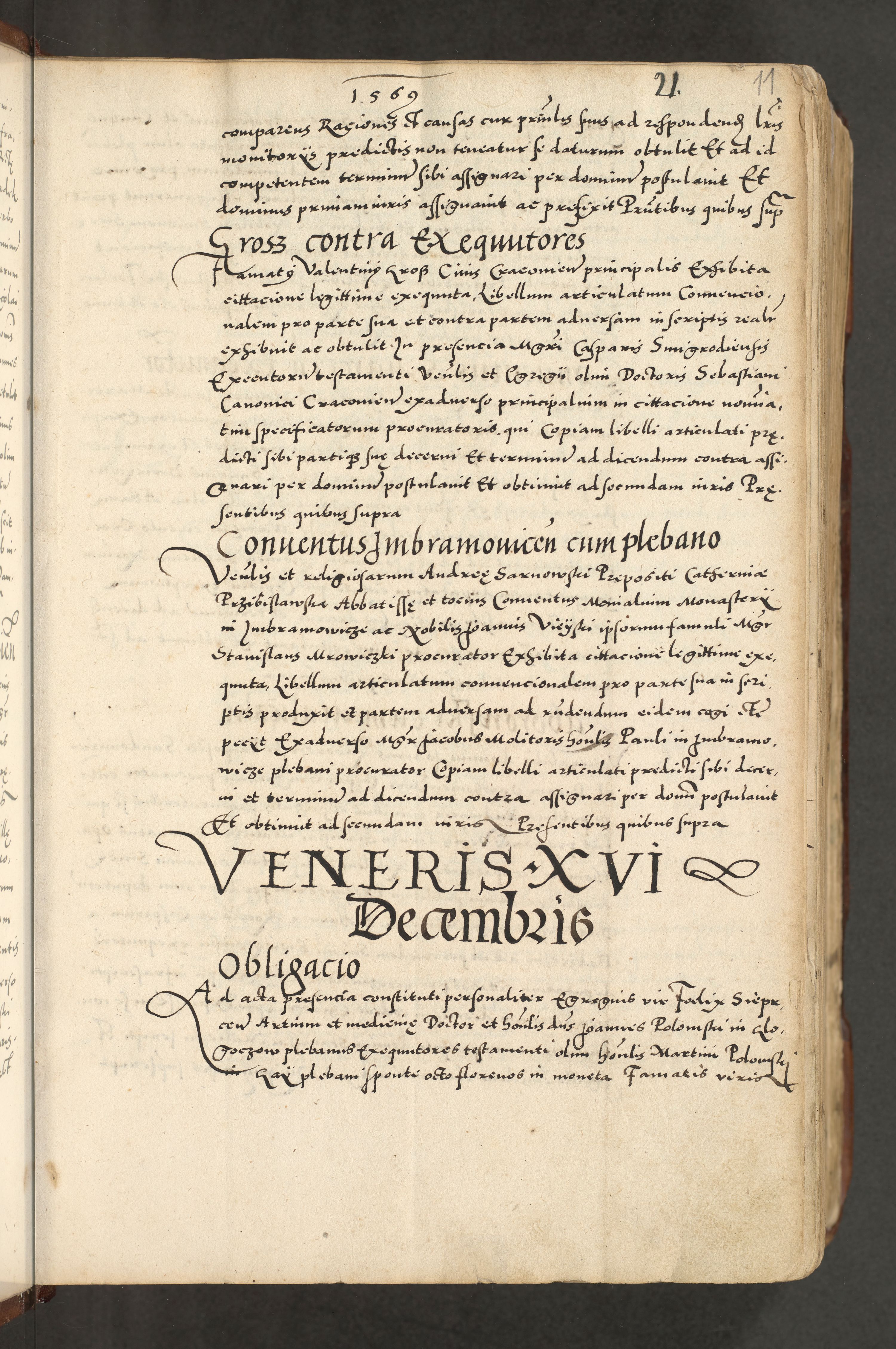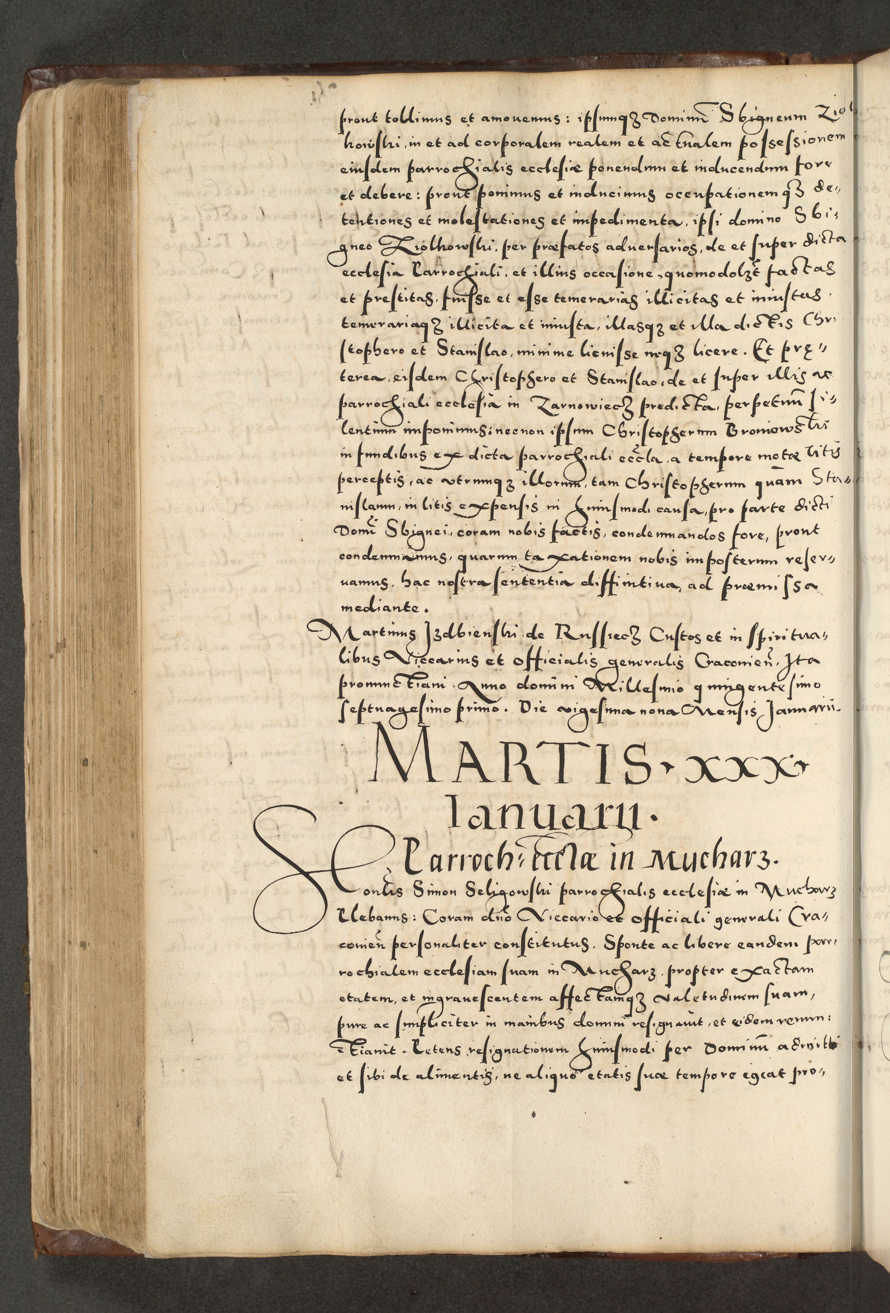 Acta actorum causarum sententiarum deffinitiuarum, quam interloquutoriarum, decretorum, obligationum, procuratorum etc. coram Reverendo Domino Martino Izbienski de Rusiecz Archidiacono Posnaniensis, custode et in Spiritualibus Vicario generali officiali Cracoviensis, ad Annum Domini Millesimum quingentesimum Sexagesimum Nonum cuius indictio duodecima, Pontus Sanctissimi Pii Papae Quinti Annus quartus foeliciter continuantur