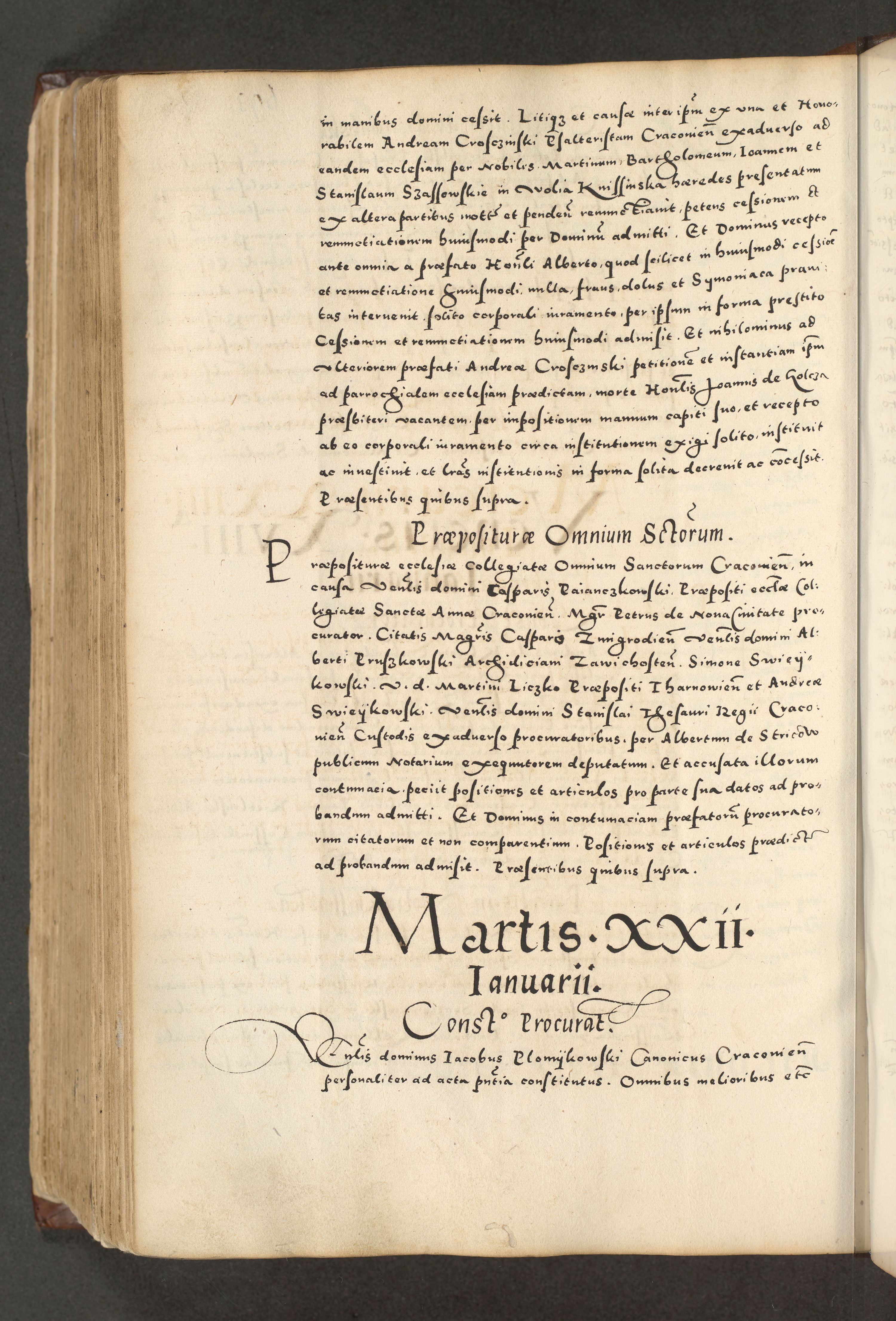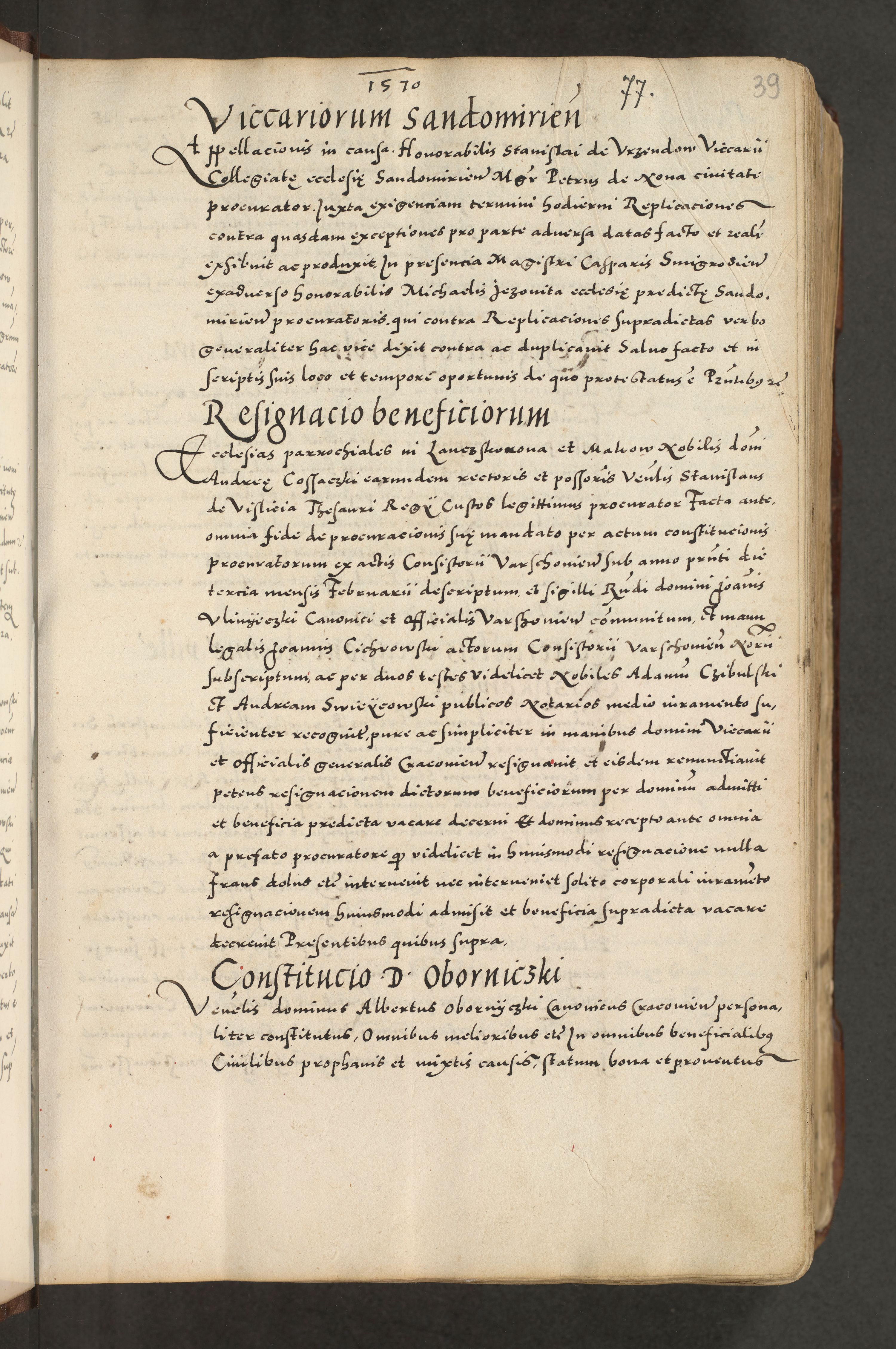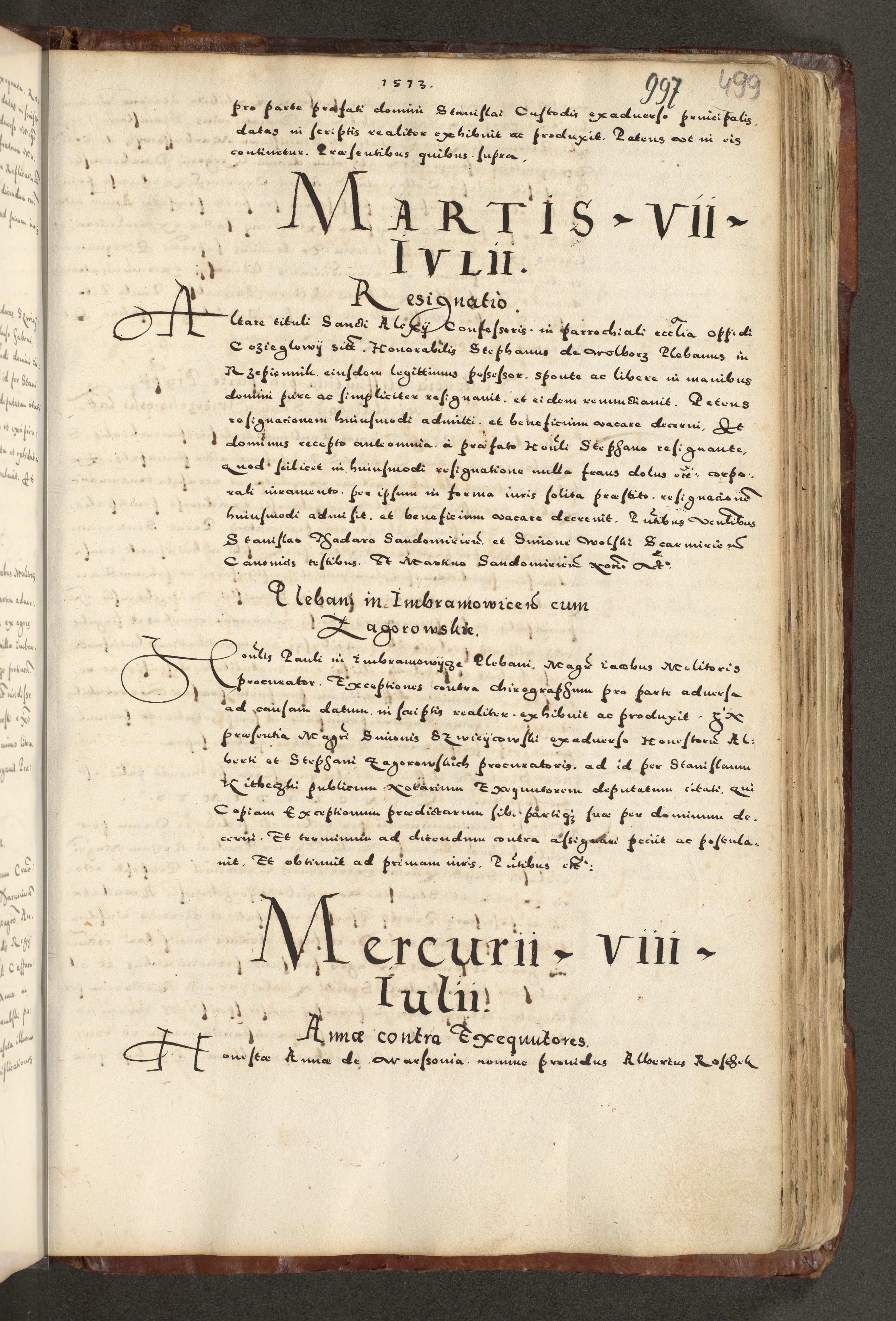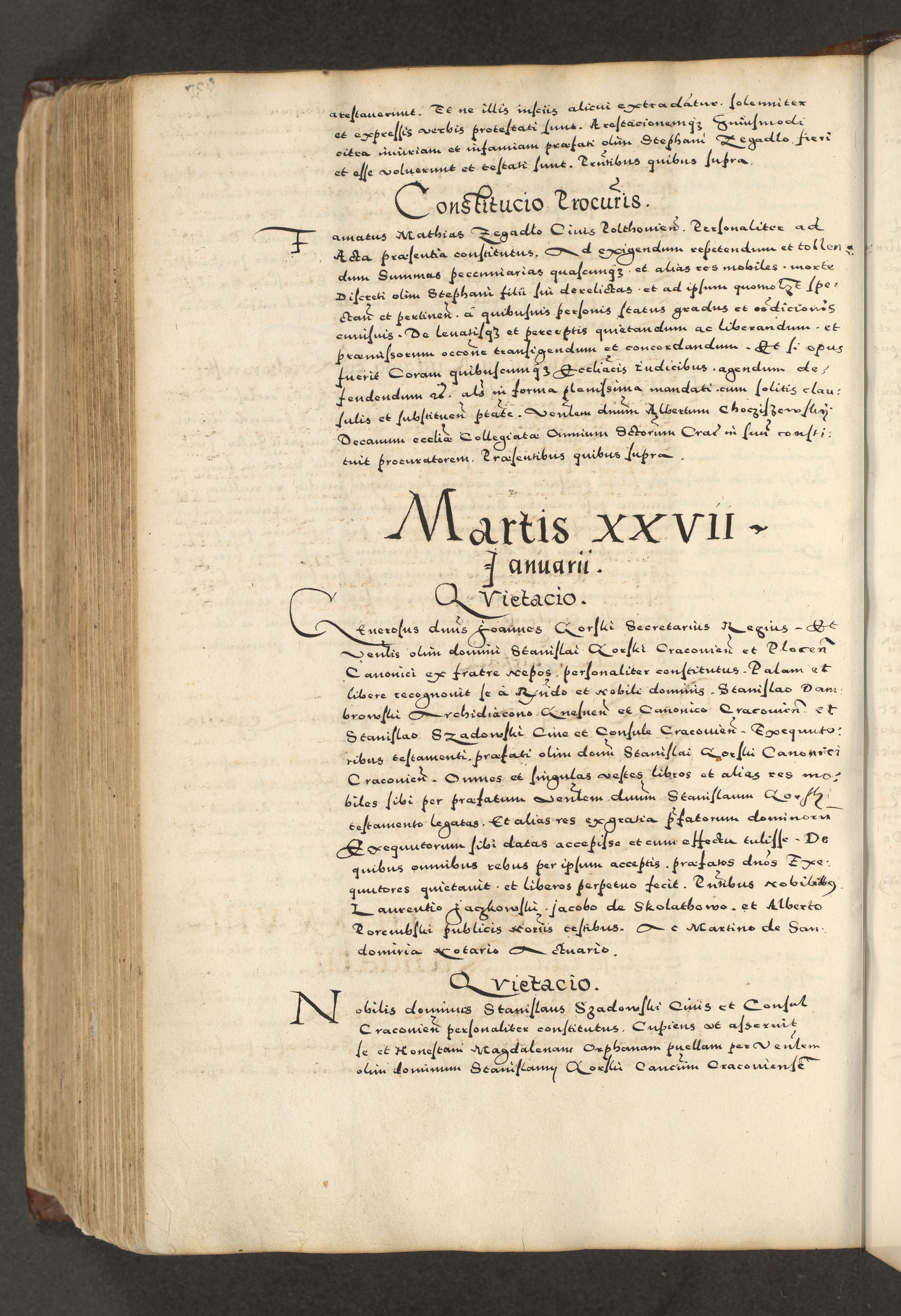 Acta actorum causarum sententiarum deffinitiuarum, quam interloquutoriarum, decretorum, obligationum, procuratorum etc. coram Reverendo Domino Martino Izbienski de Rusiecz Archidiacono Posnaniensis, custode et in Spiritualibus Vicario generali officiali Cracoviensis, ad Annum Domini Millesimum quingentesimum Sexagesimum Nonum cuius indictio duodecima, Pontus Sanctissimi Pii Papae Quinti Annus quartus foeliciter continuantur