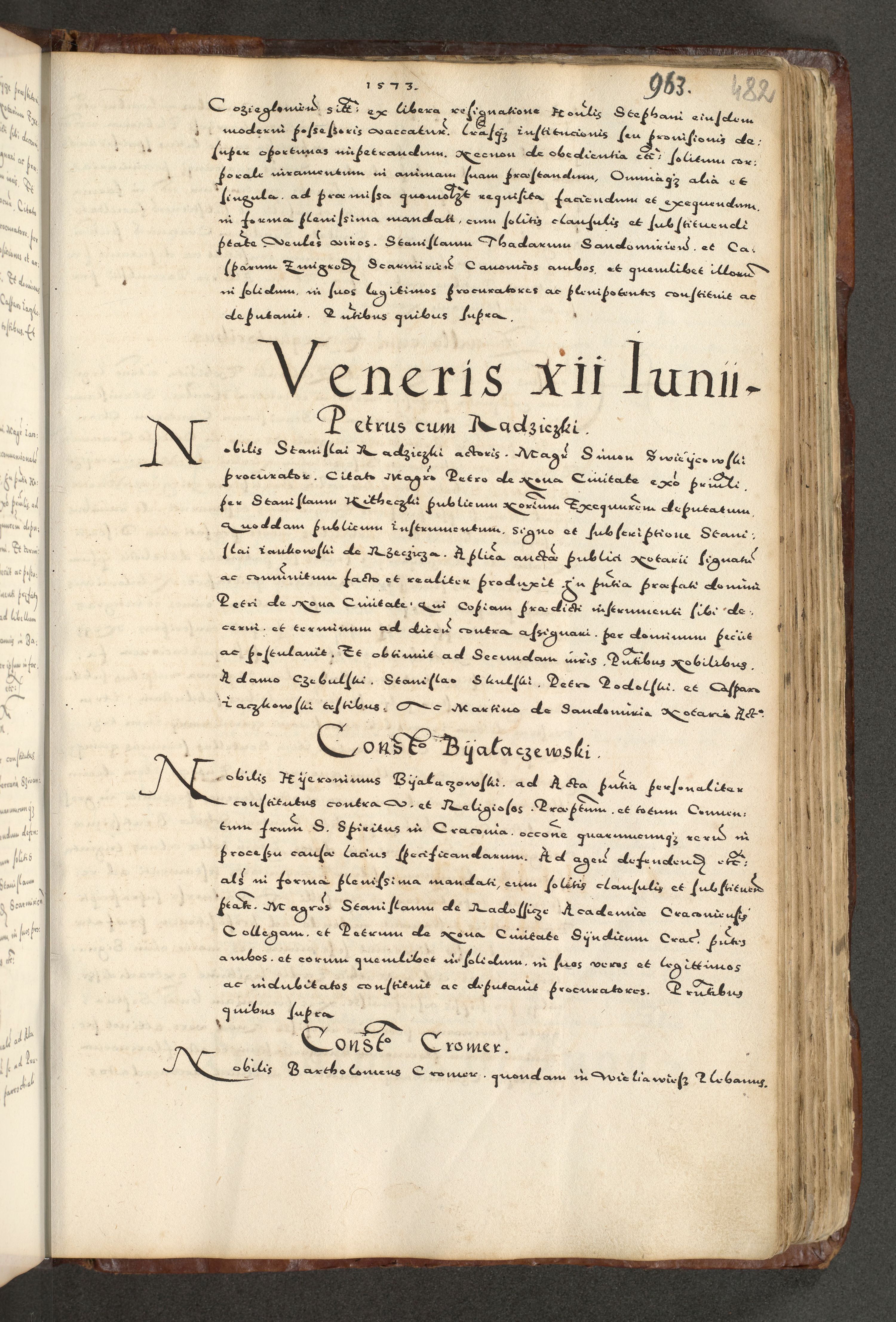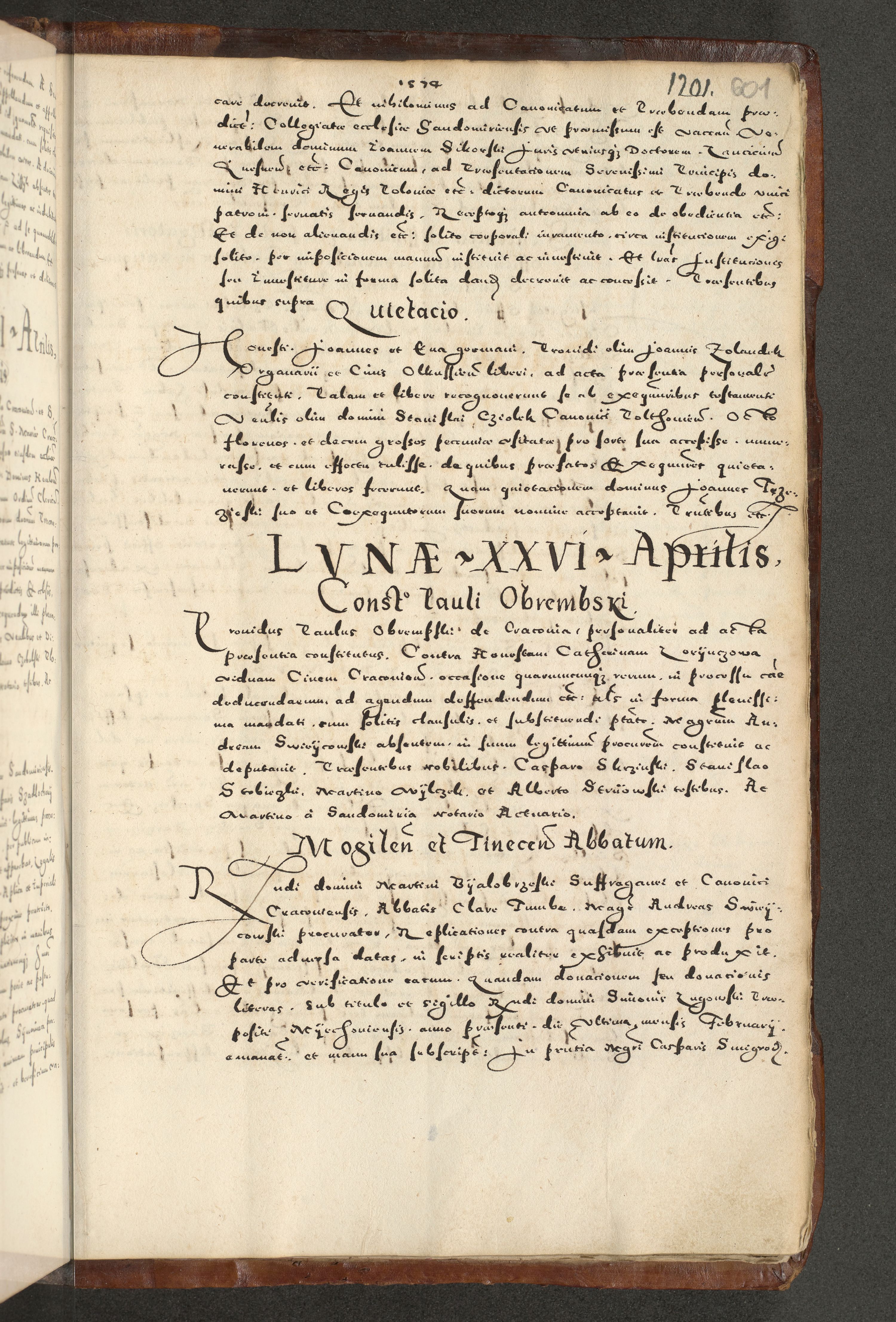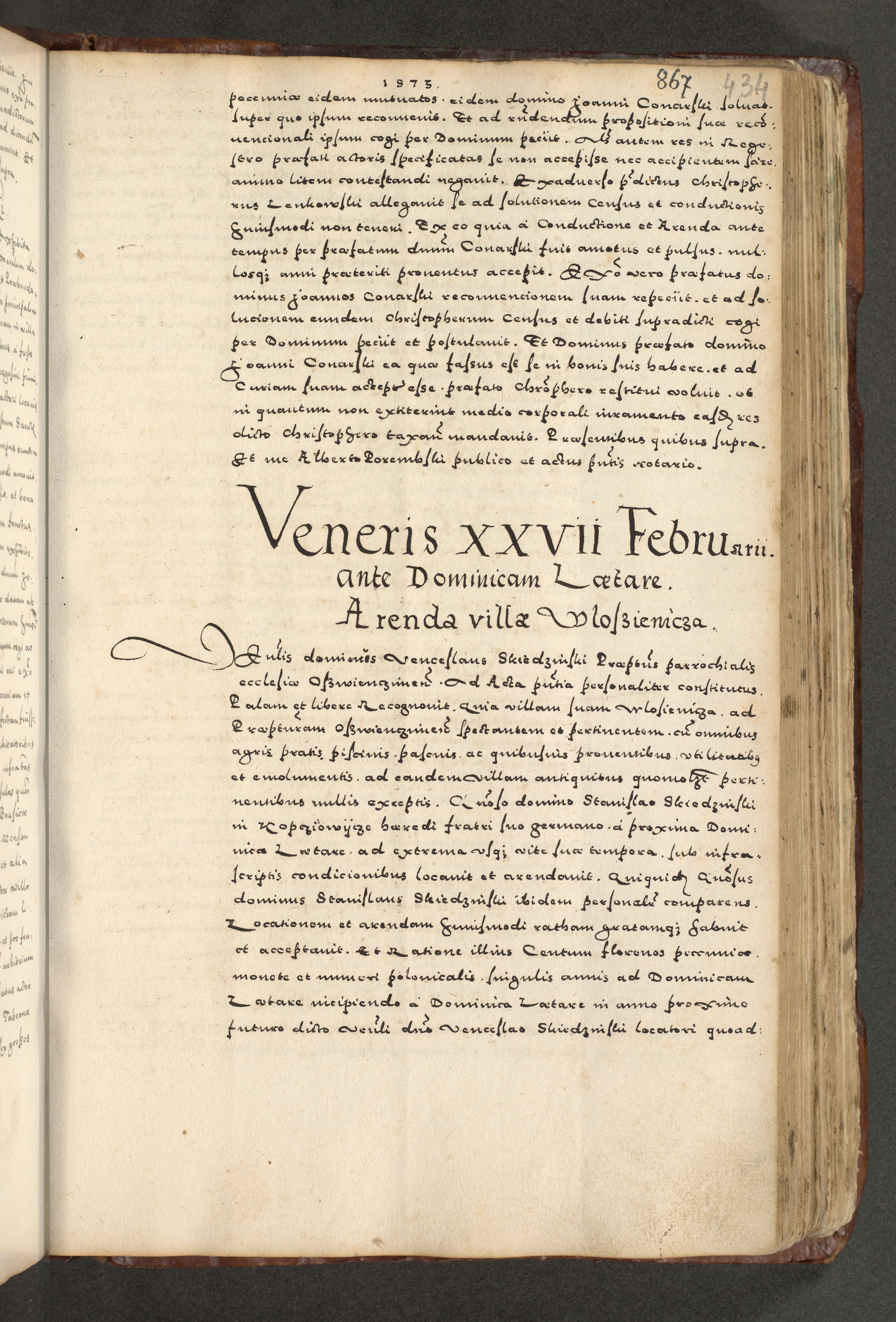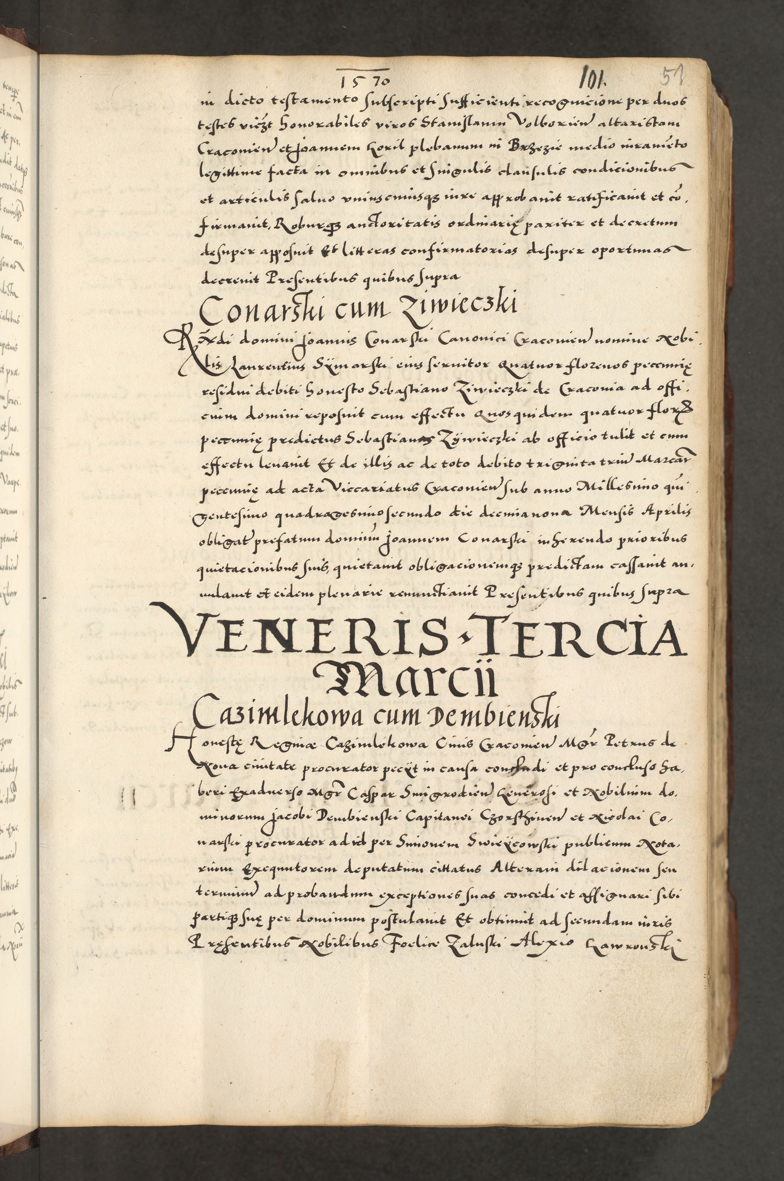 Acta actorum causarum sententiarum deffinitiuarum, quam interloquutoriarum, decretorum, obligationum, procuratorum etc. coram Reverendo Domino Martino Izbienski de Rusiecz Archidiacono Posnaniensis, custode et in Spiritualibus Vicario generali officiali Cracoviensis, ad Annum Domini Millesimum quingentesimum Sexagesimum Nonum cuius indictio duodecima, Pontus Sanctissimi Pii Papae Quinti Annus quartus foeliciter continuantur