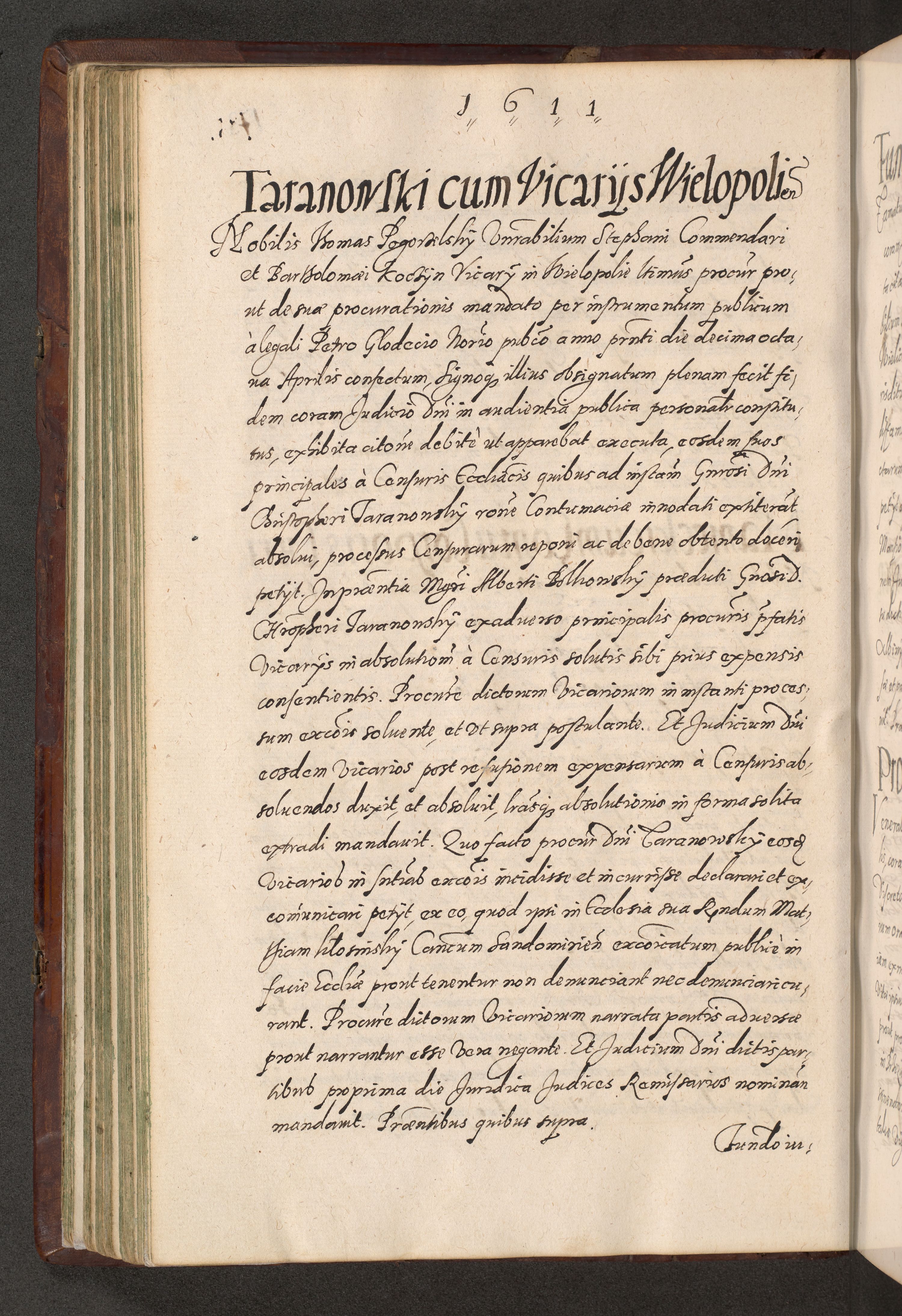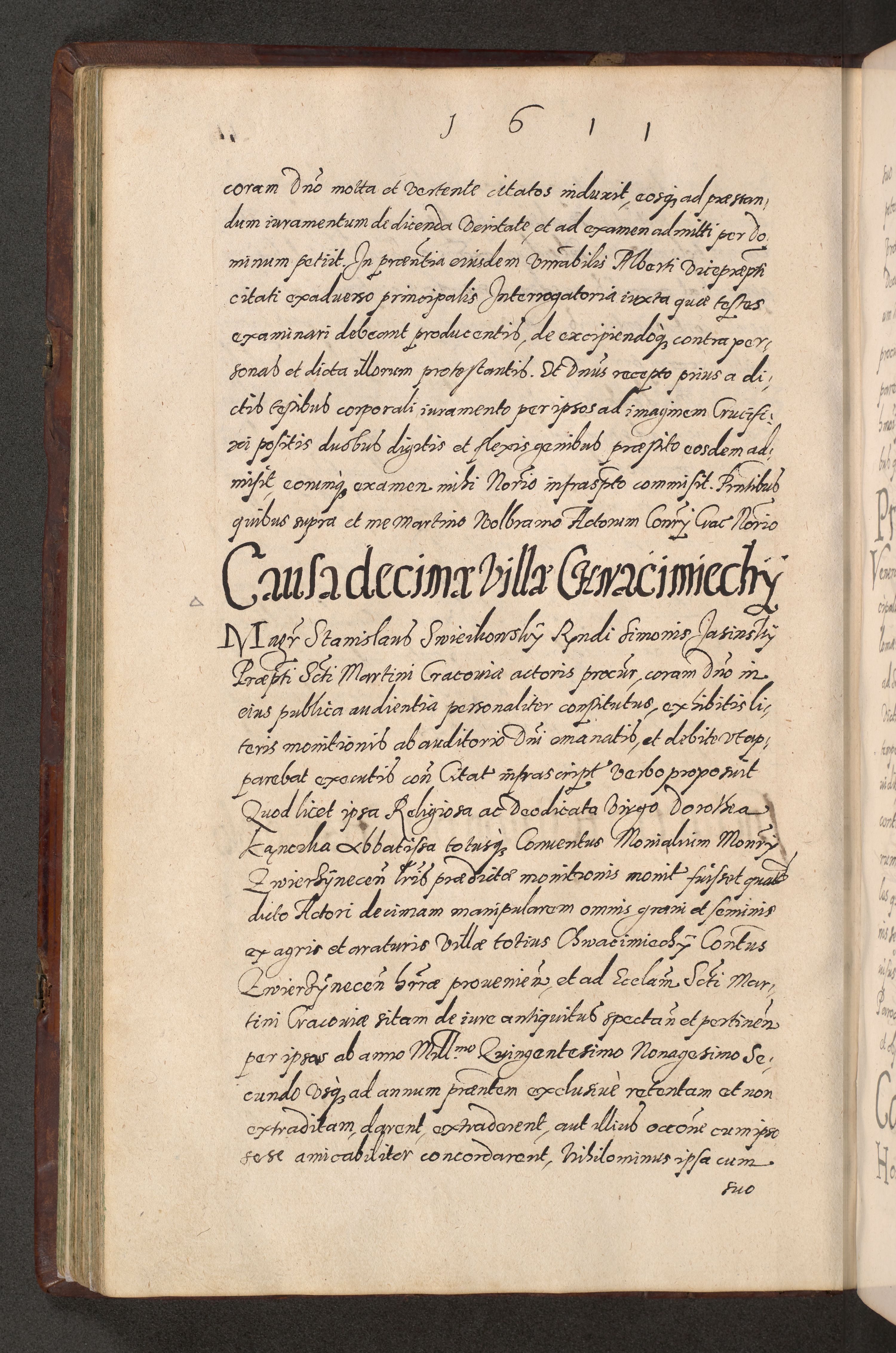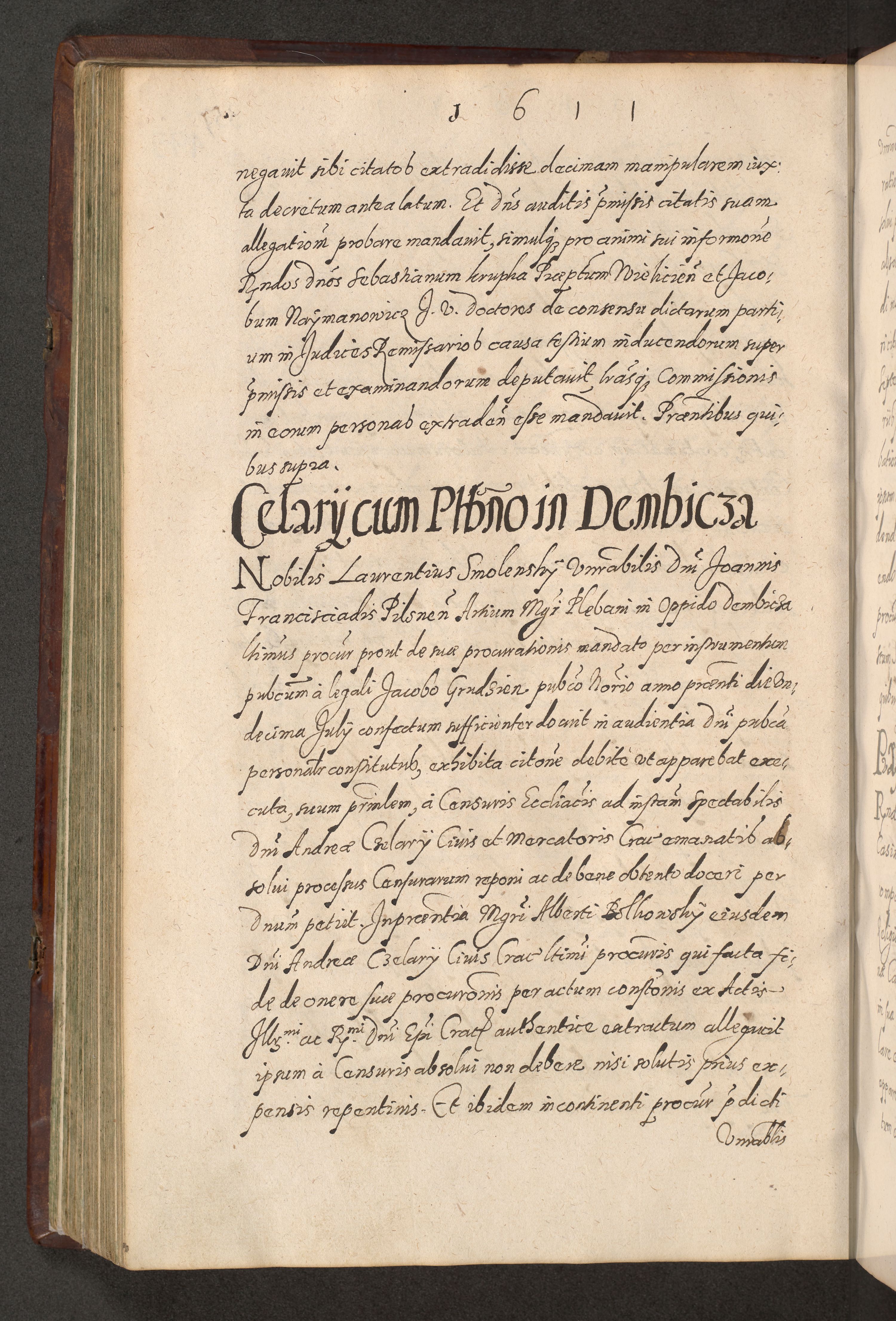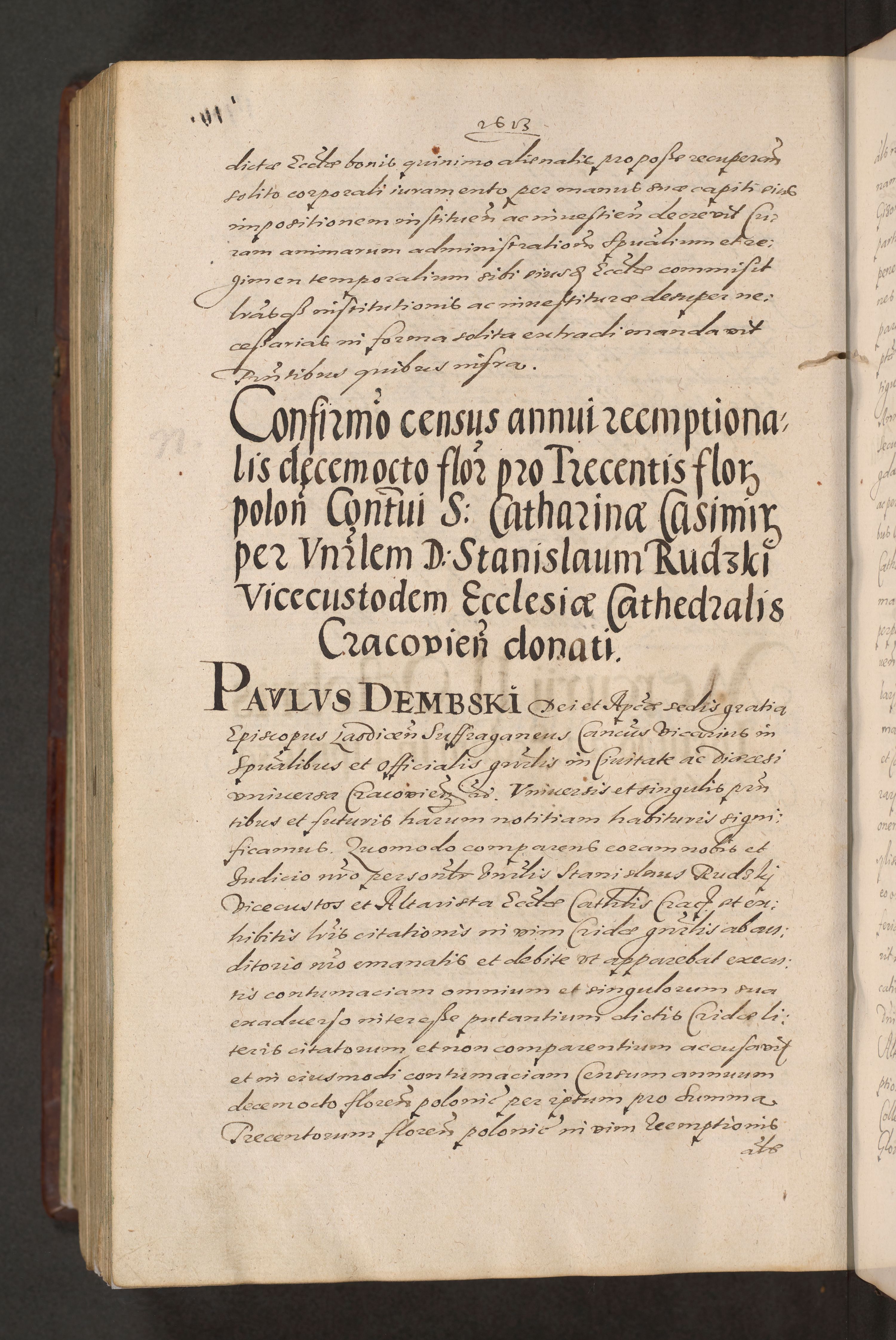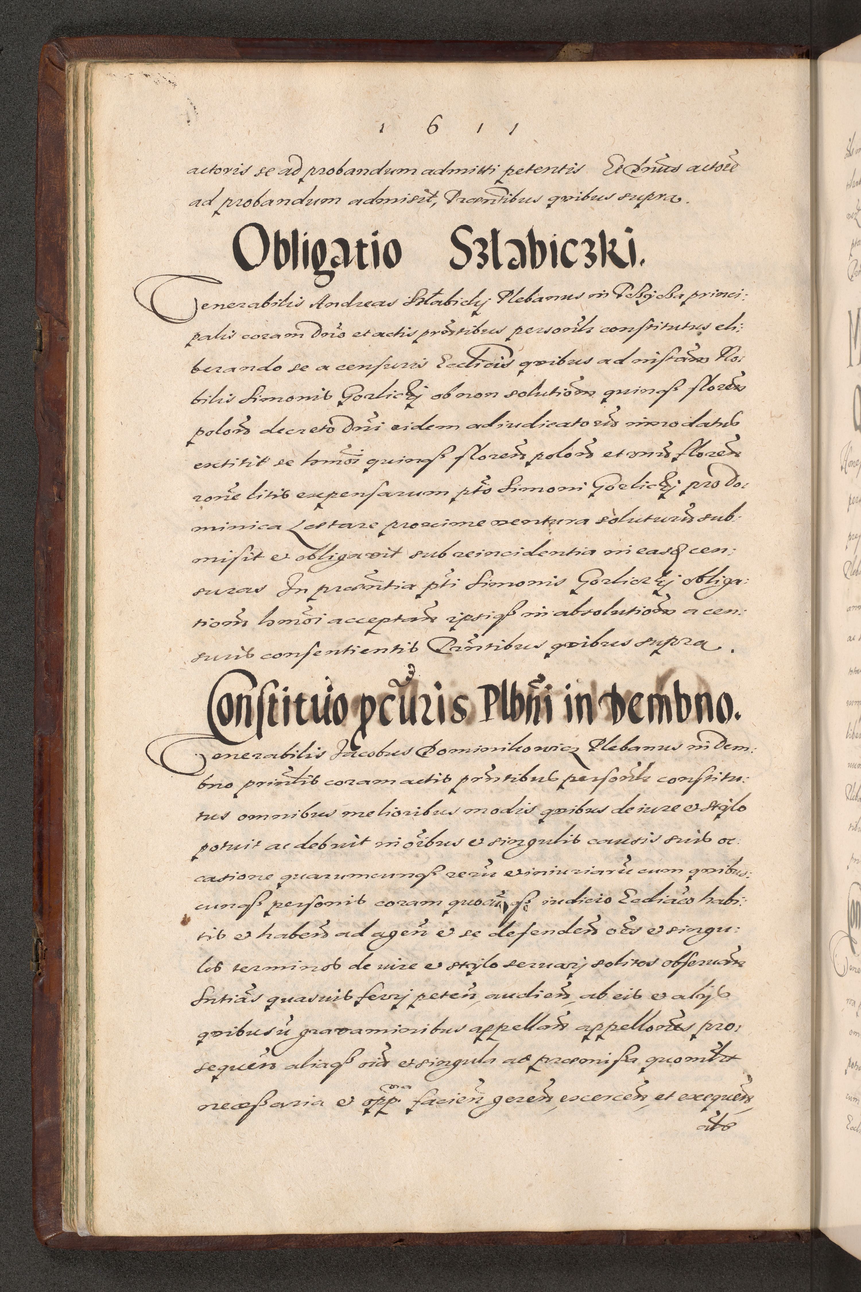 Acta actorum causarum sententiarum tam diffinitiuarum quam interloquutorisrum decretorum obligationum quietationum procuratorum constitutionum etc. etc. coram Reverendo Domino Paulo Dembski Dei et Apostolice Sedis Gratia Episcopalo Dicensis Suffraganeo Canonico Vicario in Spiritualibus et Officiali Generali Cracoviensis ad Annum Domini Millesimum Sexcentesimum Undecimum cuius indictio octava pontificatus Sanctissimi Domini Nostri Domini Pauli Divina Providentia Papae Vti foeliciter continuantur