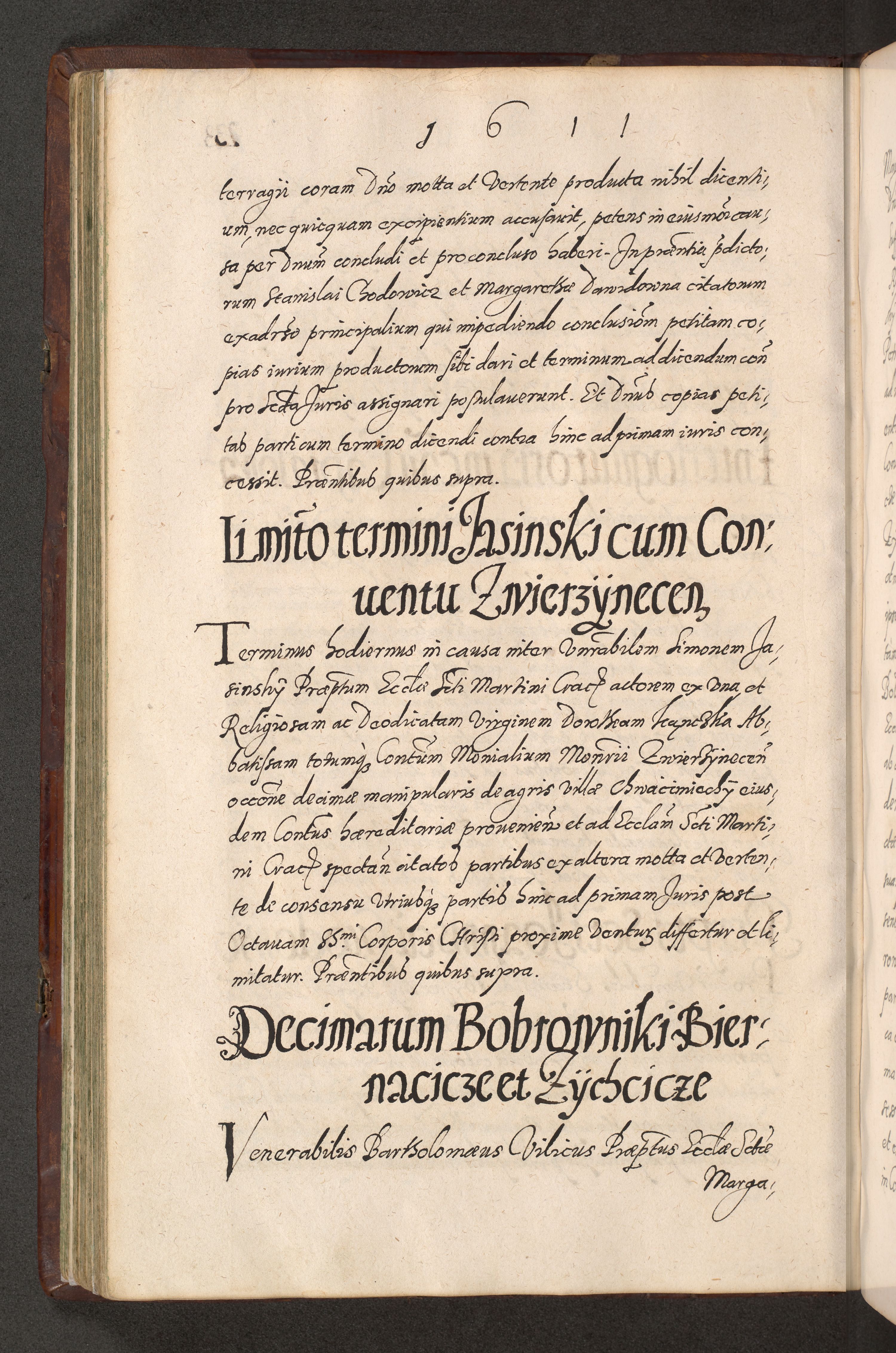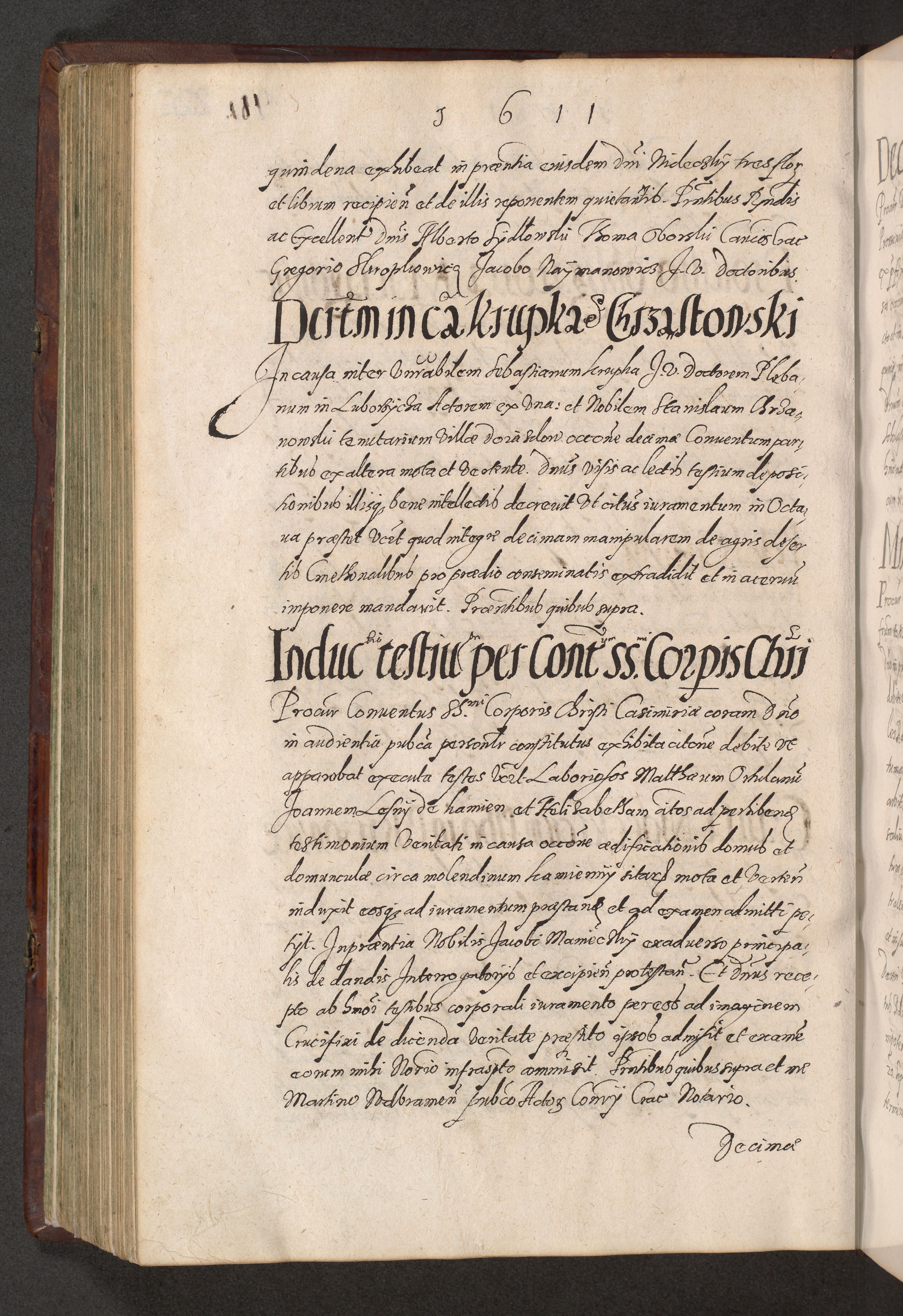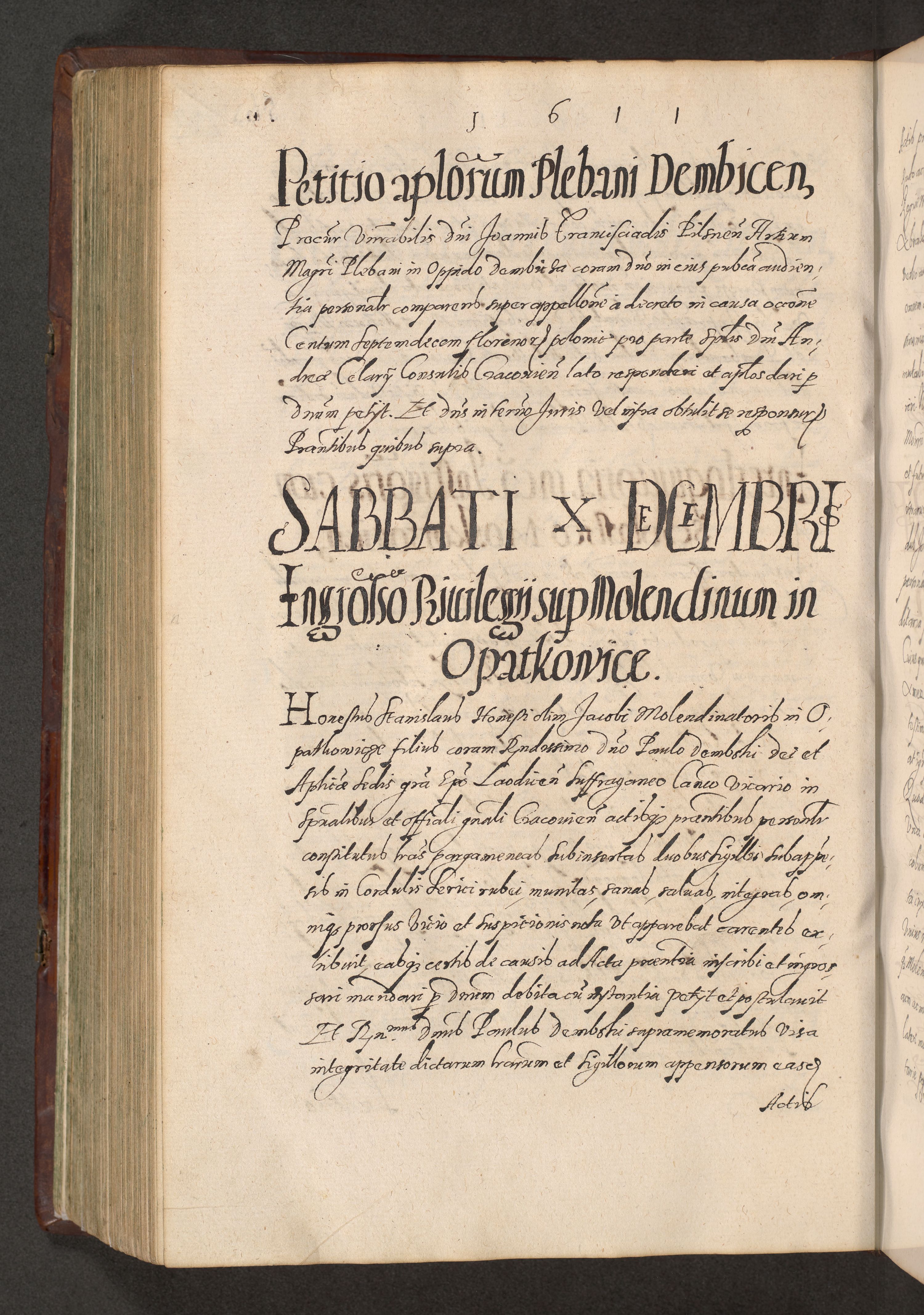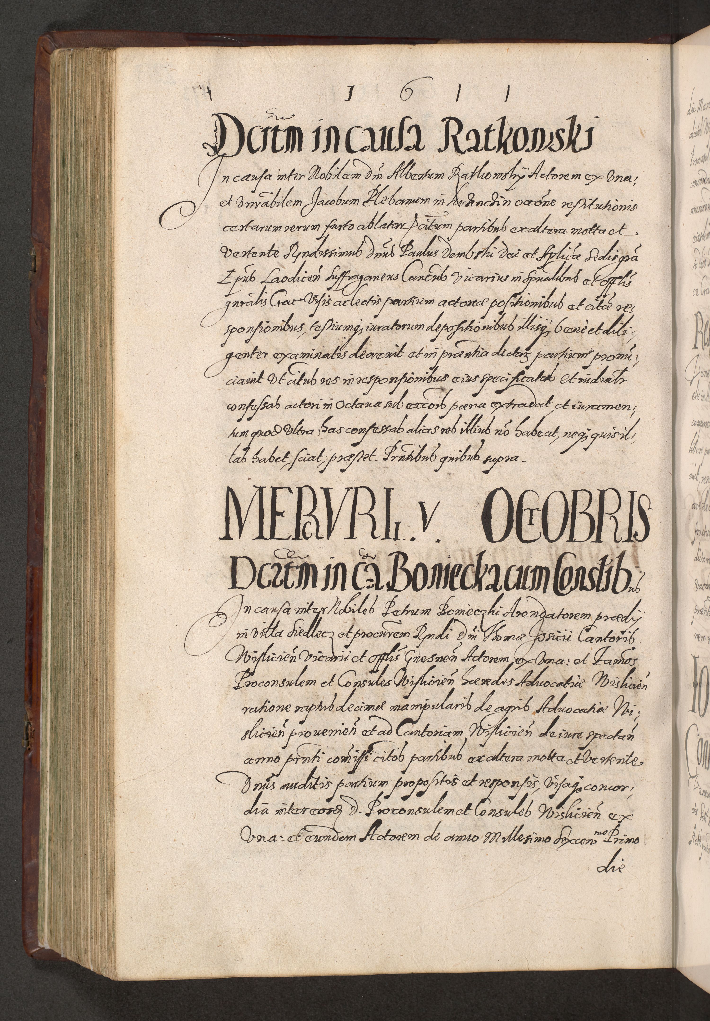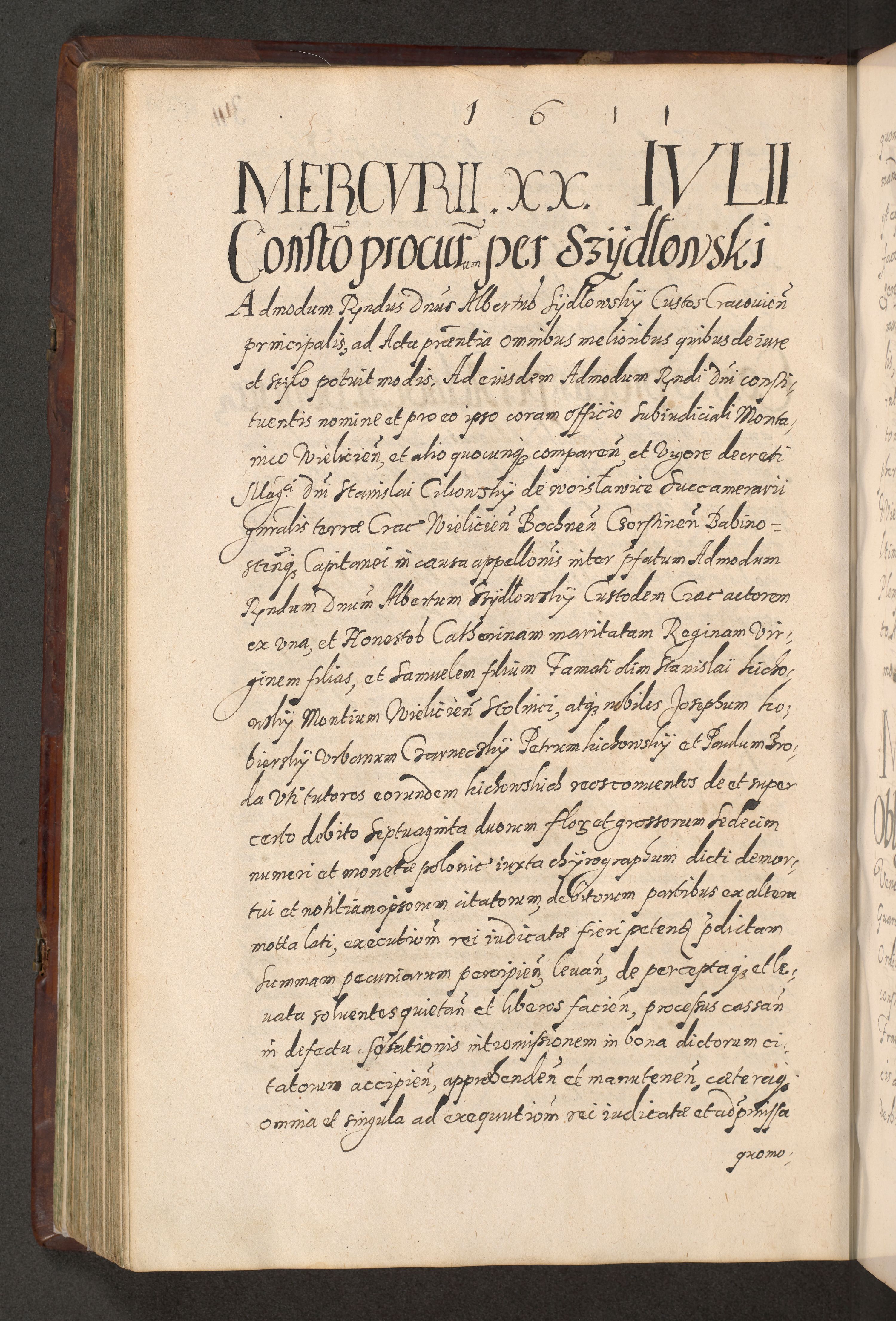 Acta actorum causarum sententiarum tam diffinitiuarum quam interloquutorisrum decretorum obligationum quietationum procuratorum constitutionum etc. etc. coram Reverendo Domino Paulo Dembski Dei et Apostolice Sedis Gratia Episcopalo Dicensis Suffraganeo Canonico Vicario in Spiritualibus et Officiali Generali Cracoviensis ad Annum Domini Millesimum Sexcentesimum Undecimum cuius indictio octava pontificatus Sanctissimi Domini Nostri Domini Pauli Divina Providentia Papae Vti foeliciter continuantur